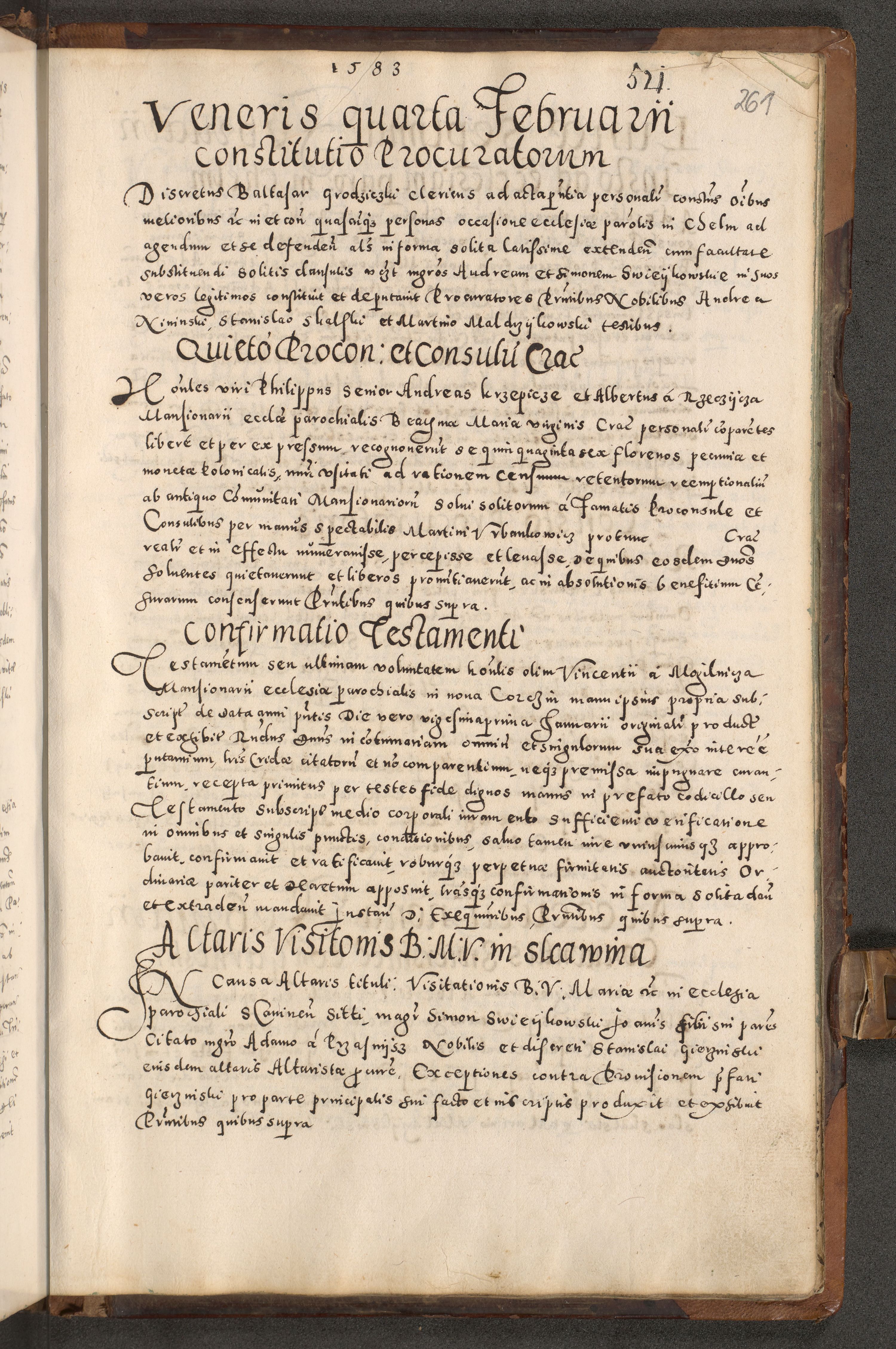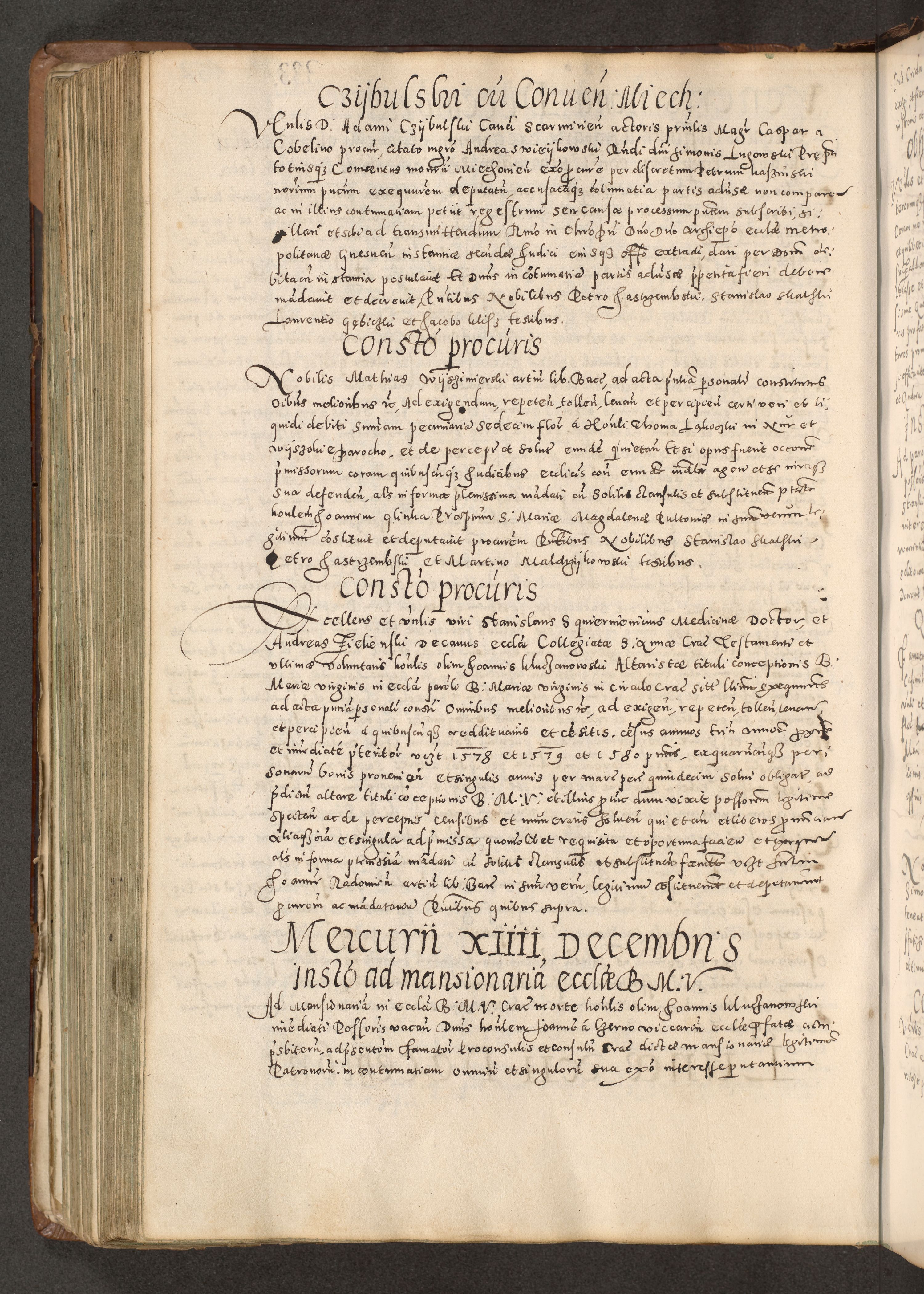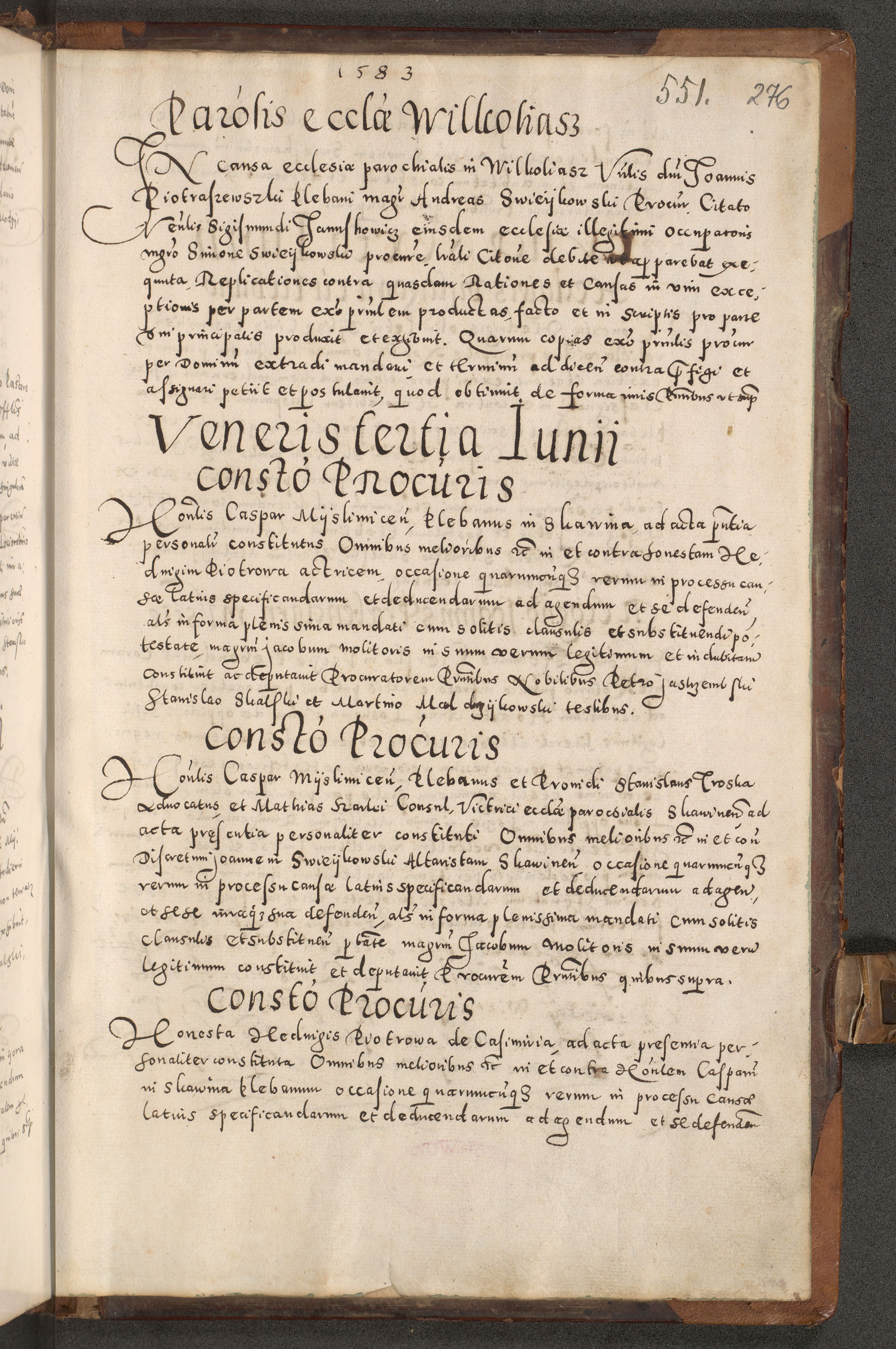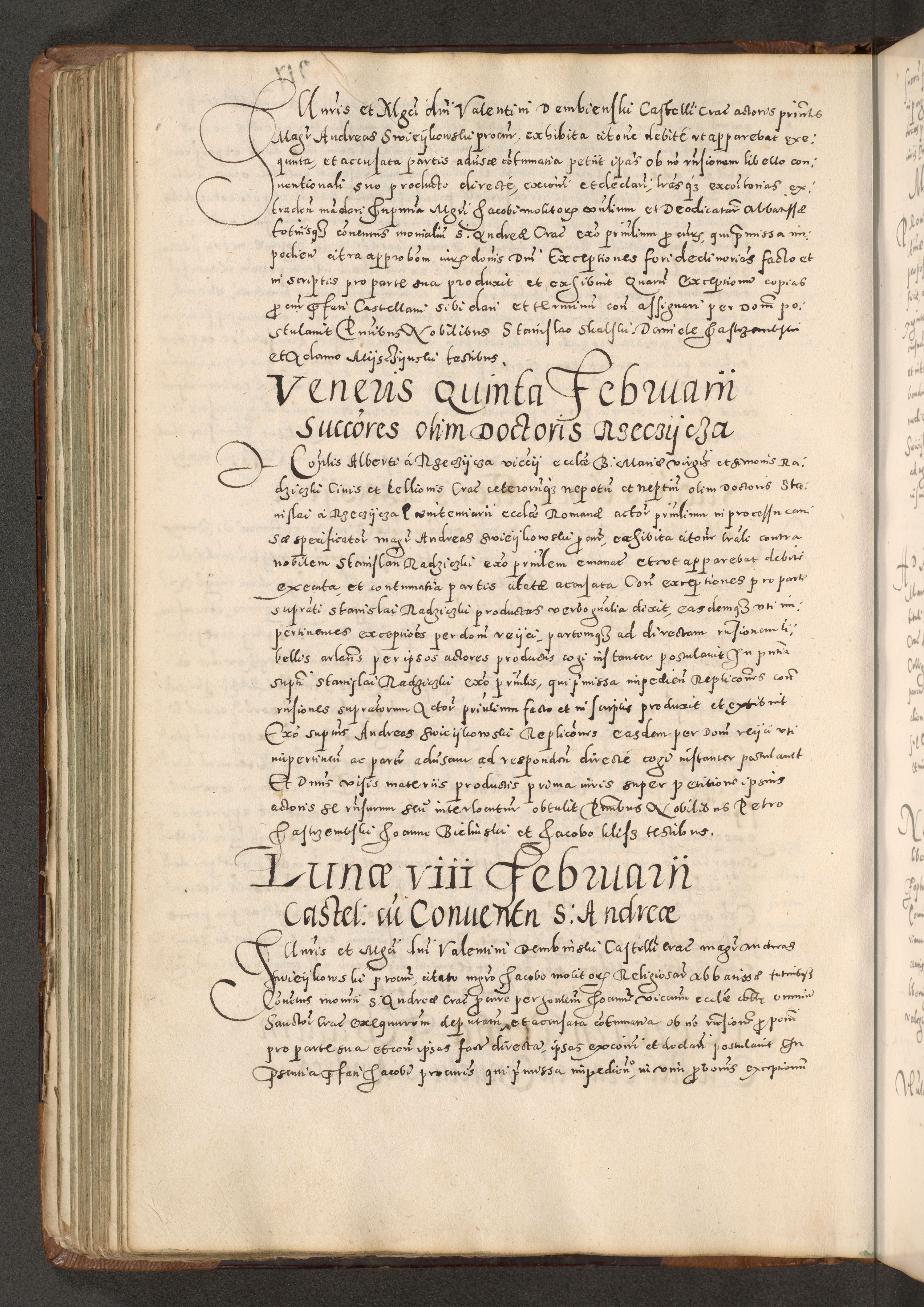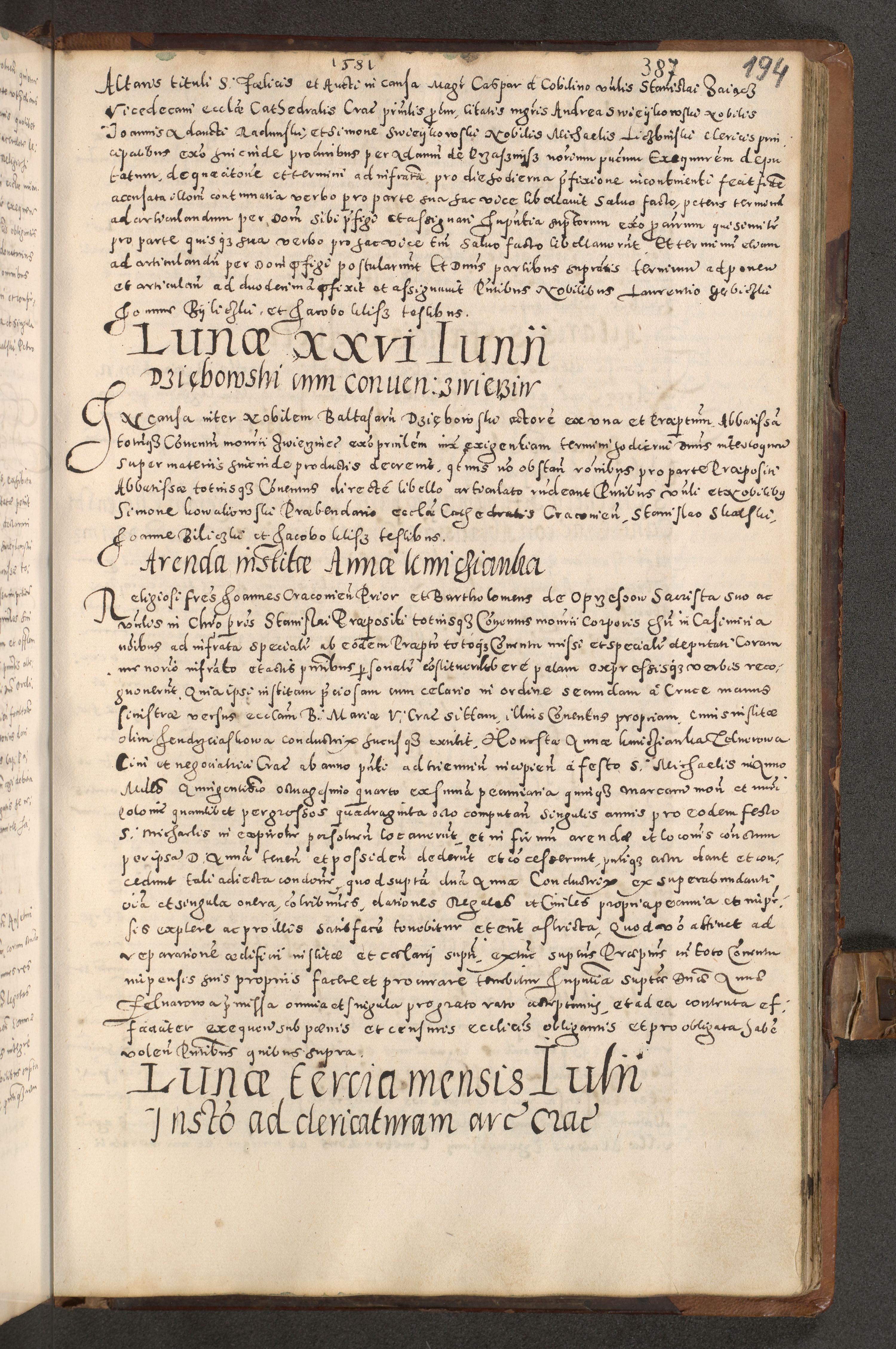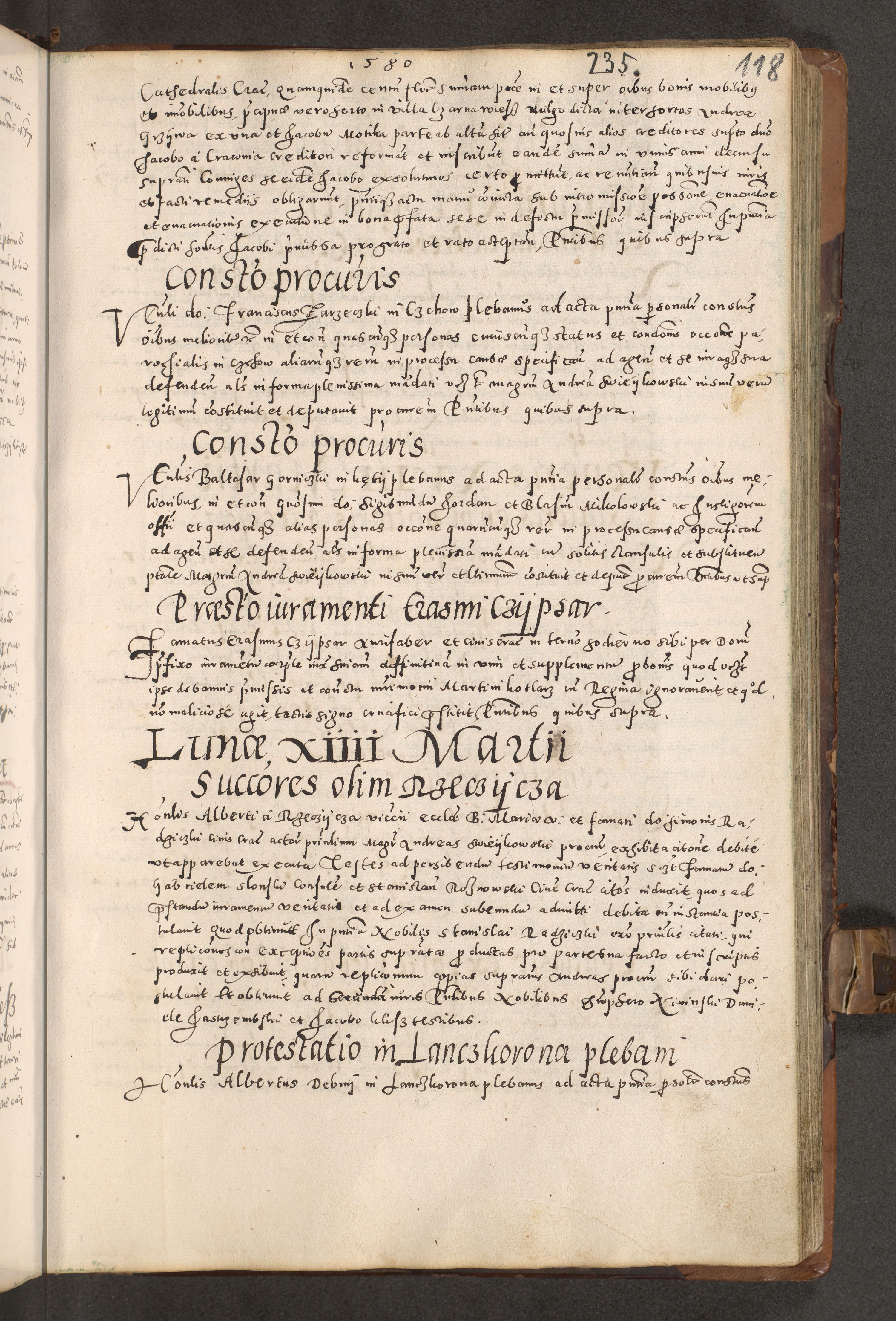 Acta actorum causarum tam diffinitivarum quam interloquutoriarum sententiarum decretorum obligationum quietatorum constuorum pro reverendum coram Reverendo Domino Alberto Nininski Custode Sandecensis Canonico et Archipresbitero Viccarioque in Spiritualibus ac Officiali Generali Cracoviensis ad Annum Domini Millesimum Qumgentesimum Septuagentesimum Nonum cuius Judictio septima Pontificat SS. nostri Domini Gregory pp. tredecimi Anno septimo inchoantur faliciter