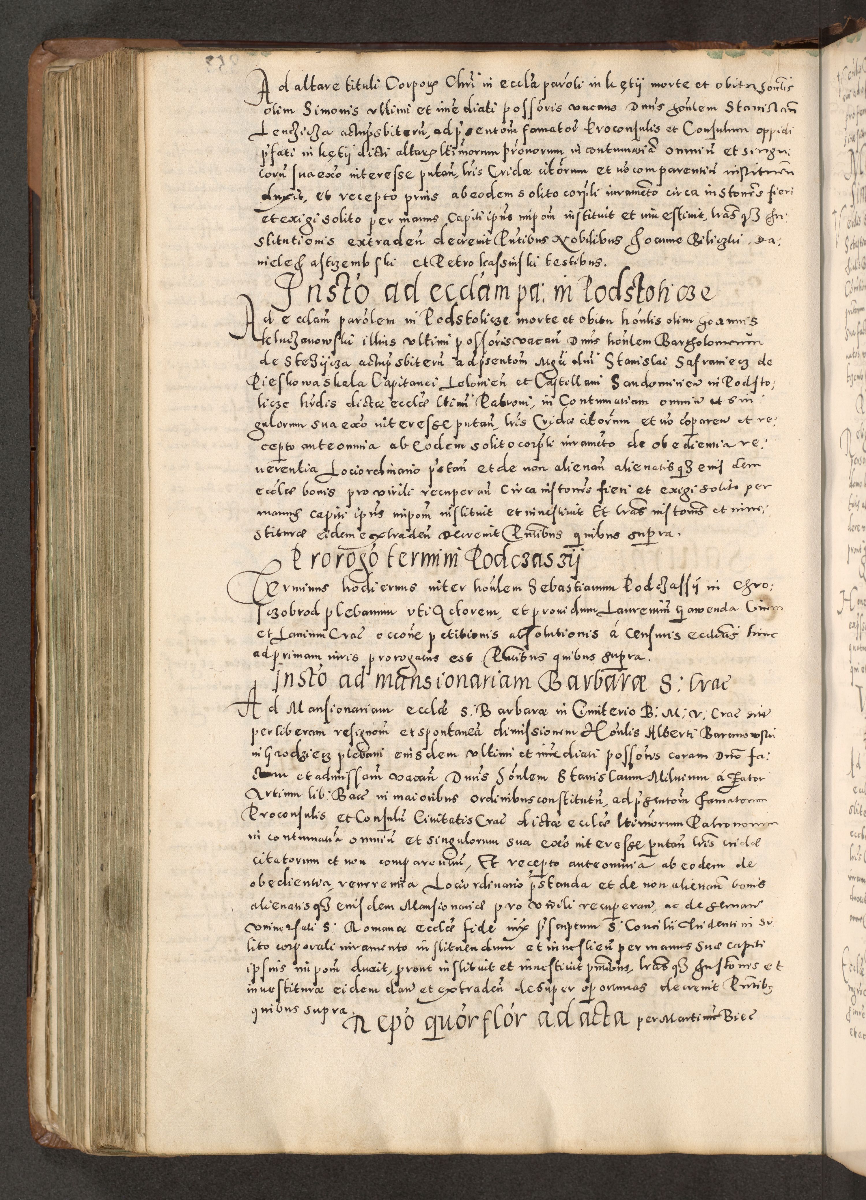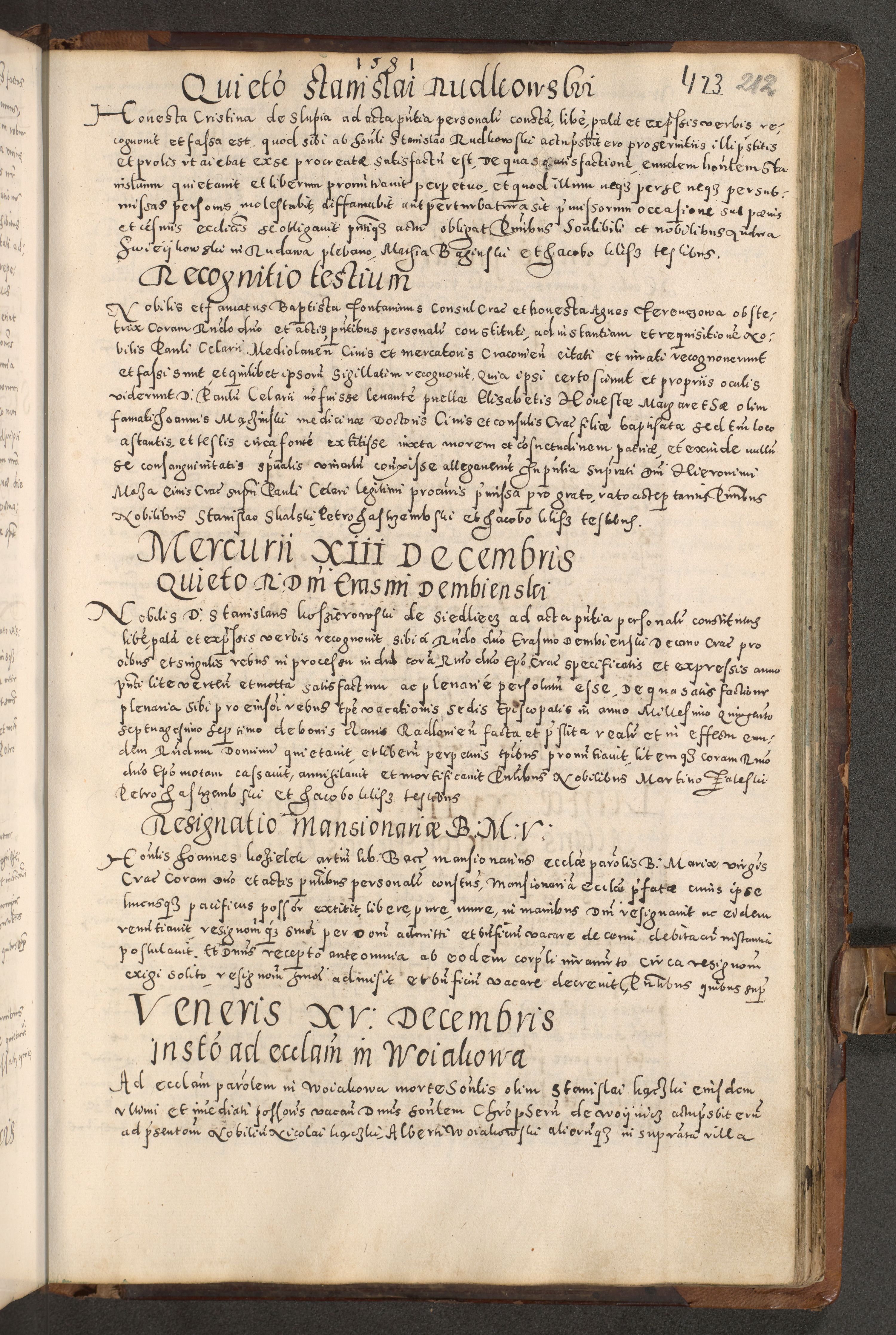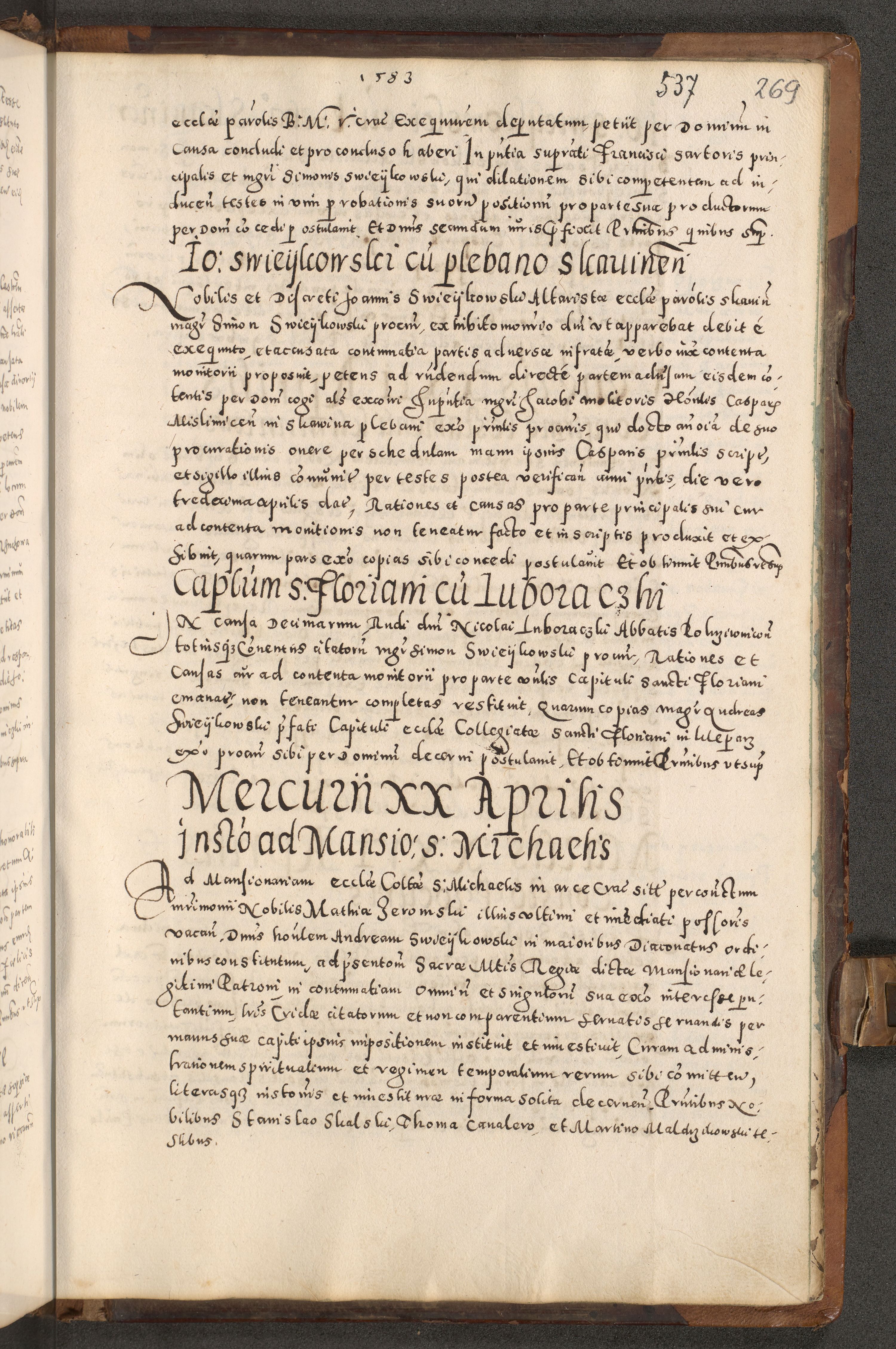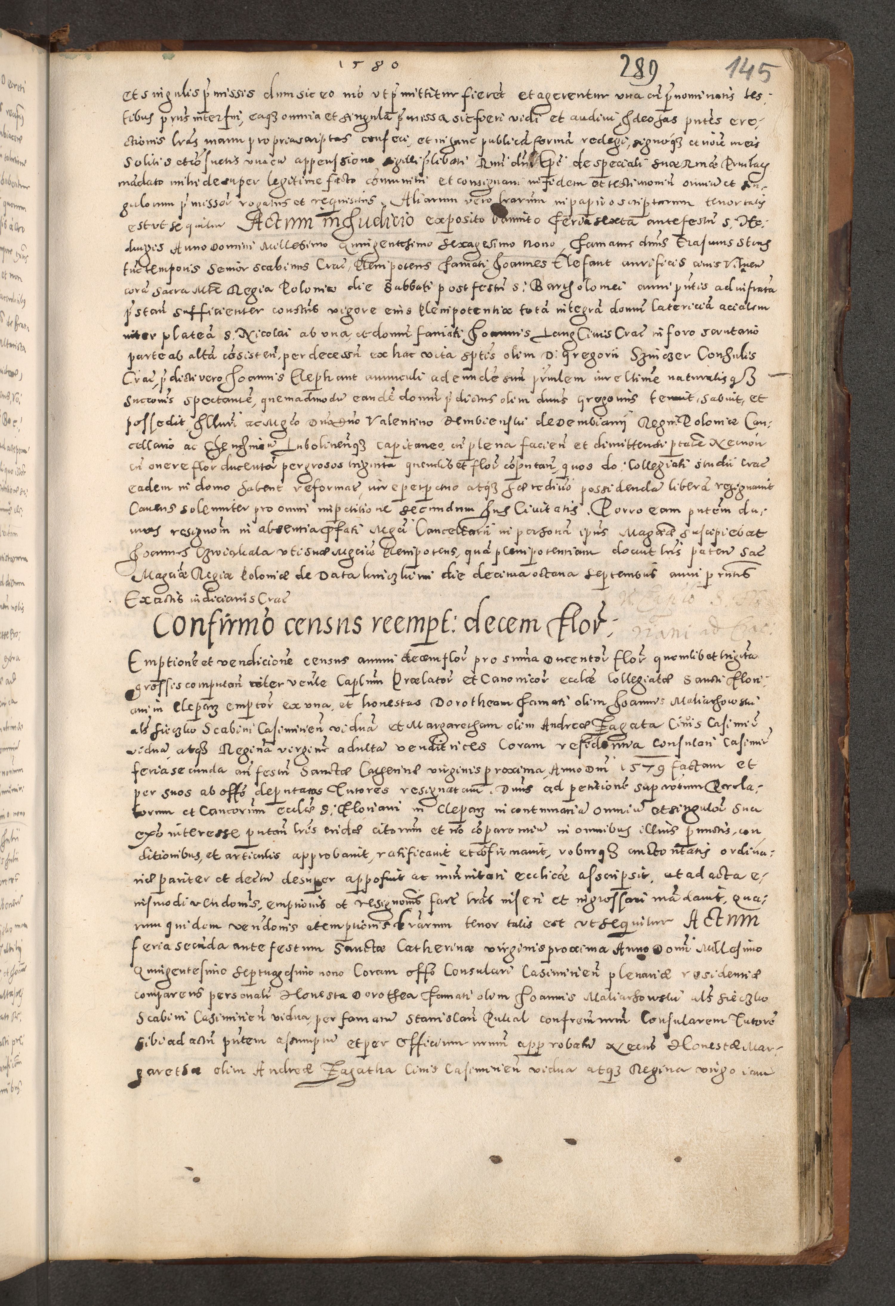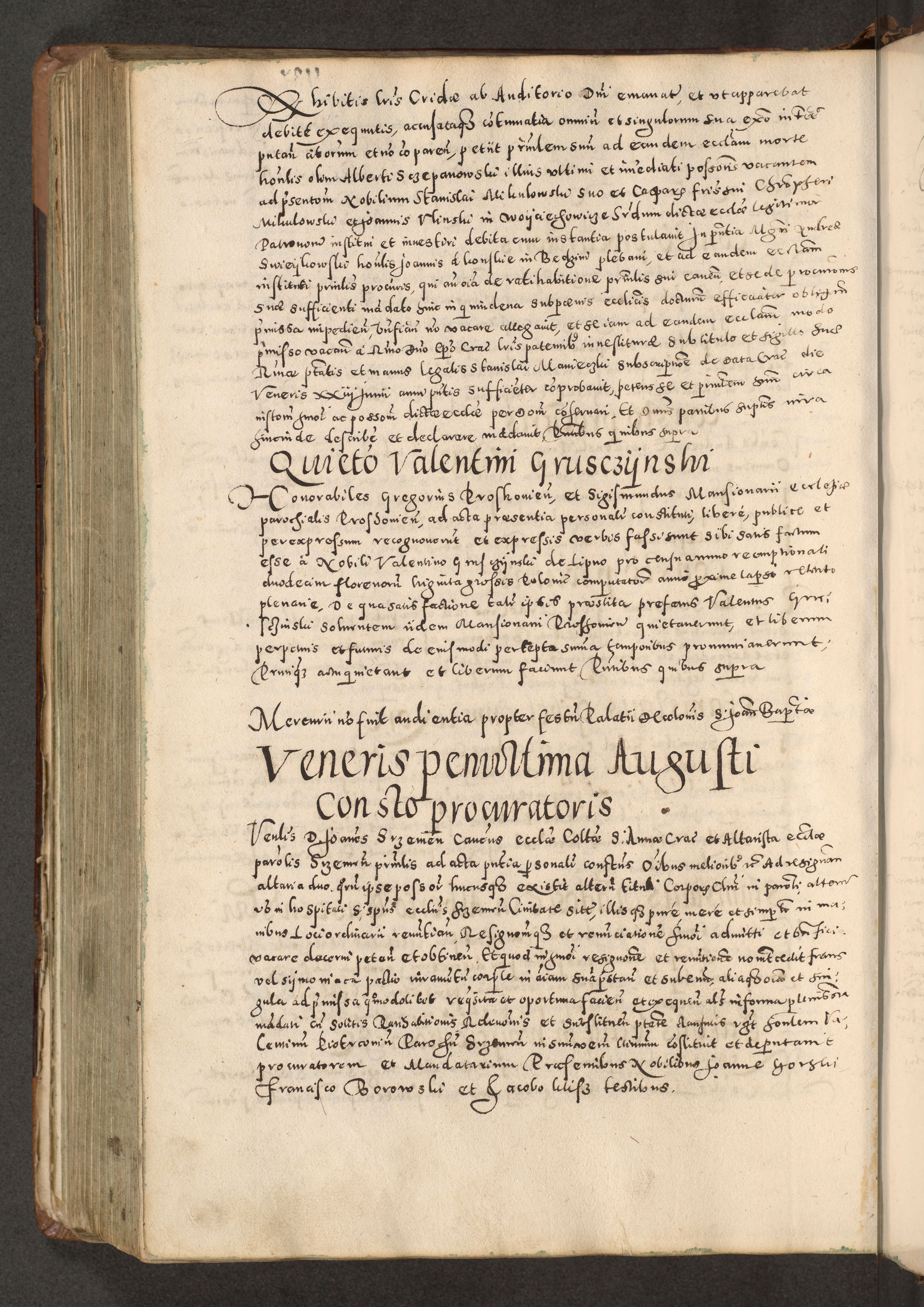 Acta actorum causarum tam diffinitivarum quam interloquutoriarum sententiarum decretorum obligationum quietatorum constuorum pro reverendum coram Reverendo Domino Alberto Nininski Custode Sandecensis Canonico et Archipresbitero Viccarioque in Spiritualibus ac Officiali Generali Cracoviensis ad Annum Domini Millesimum Qumgentesimum Septuagentesimum Nonum cuius Judictio septima Pontificat SS. nostri Domini Gregory pp. tredecimi Anno septimo inchoantur faliciter