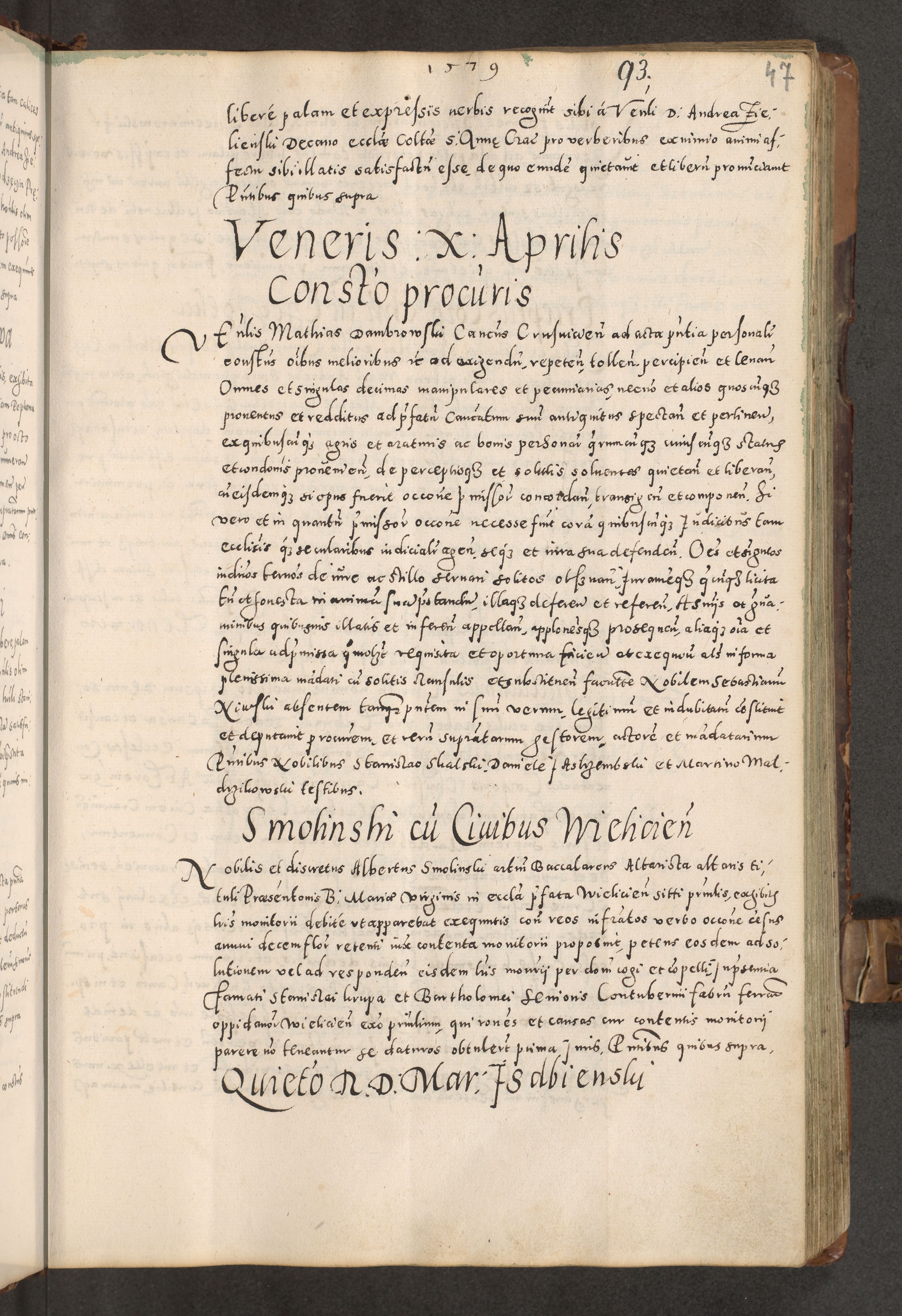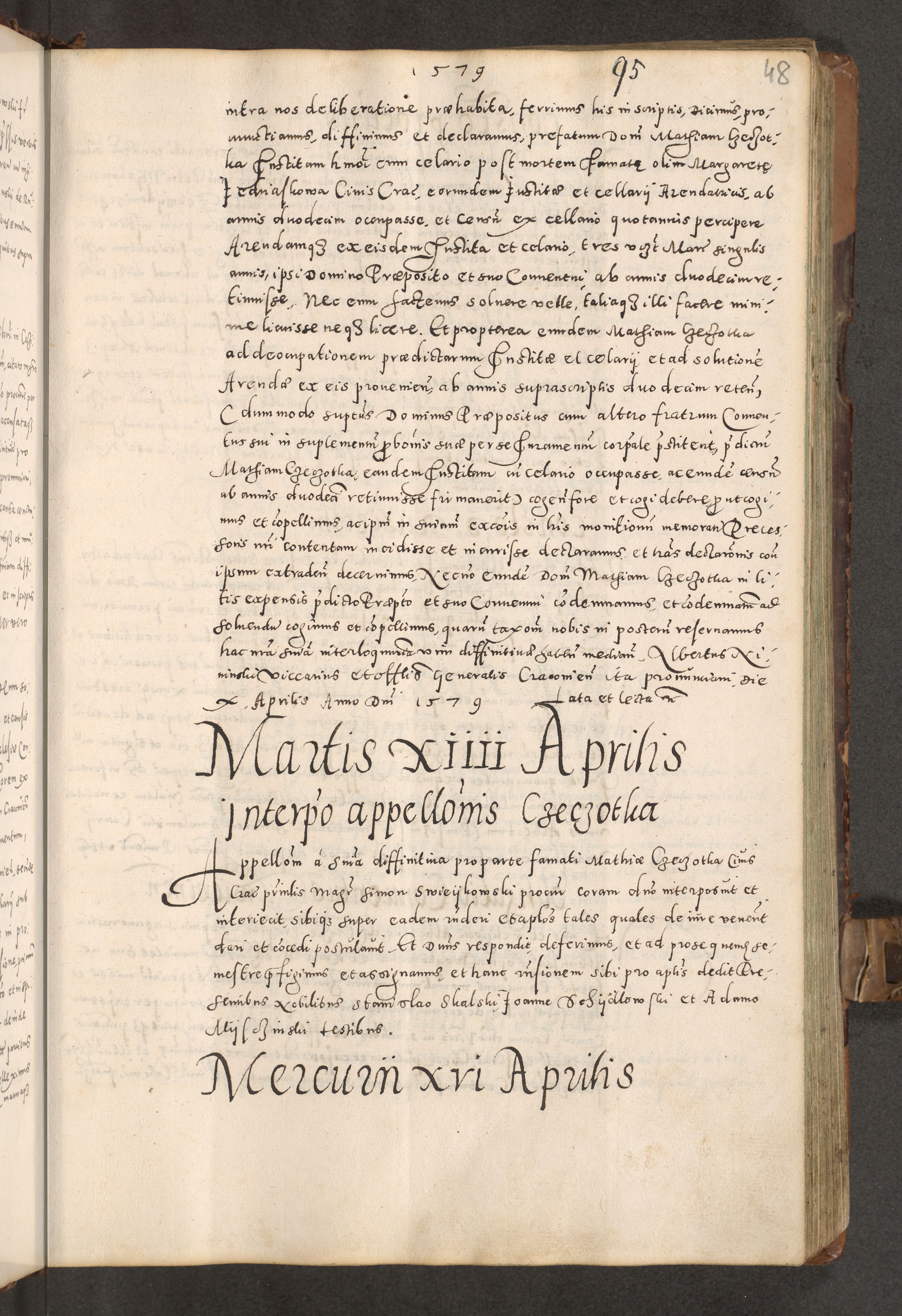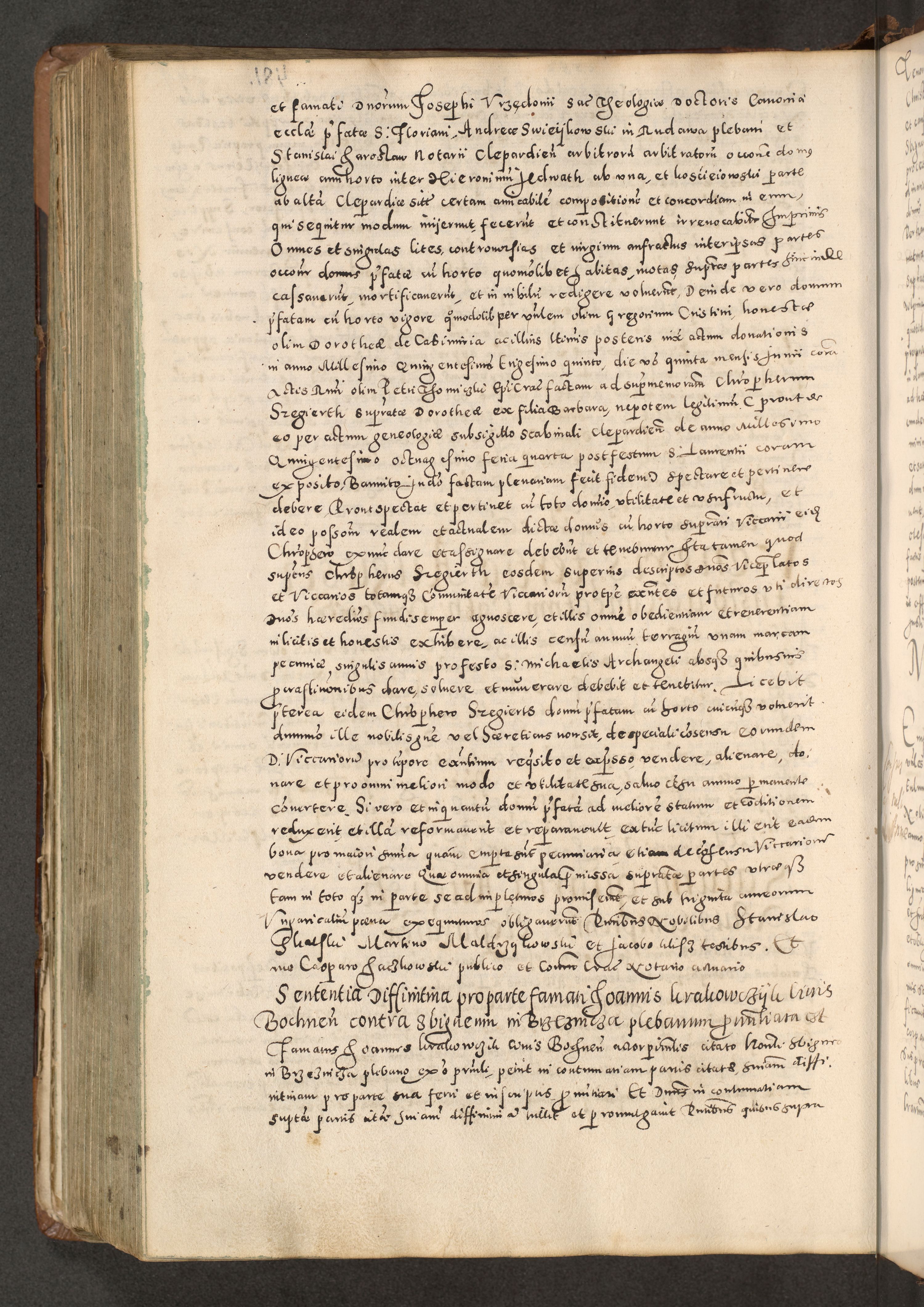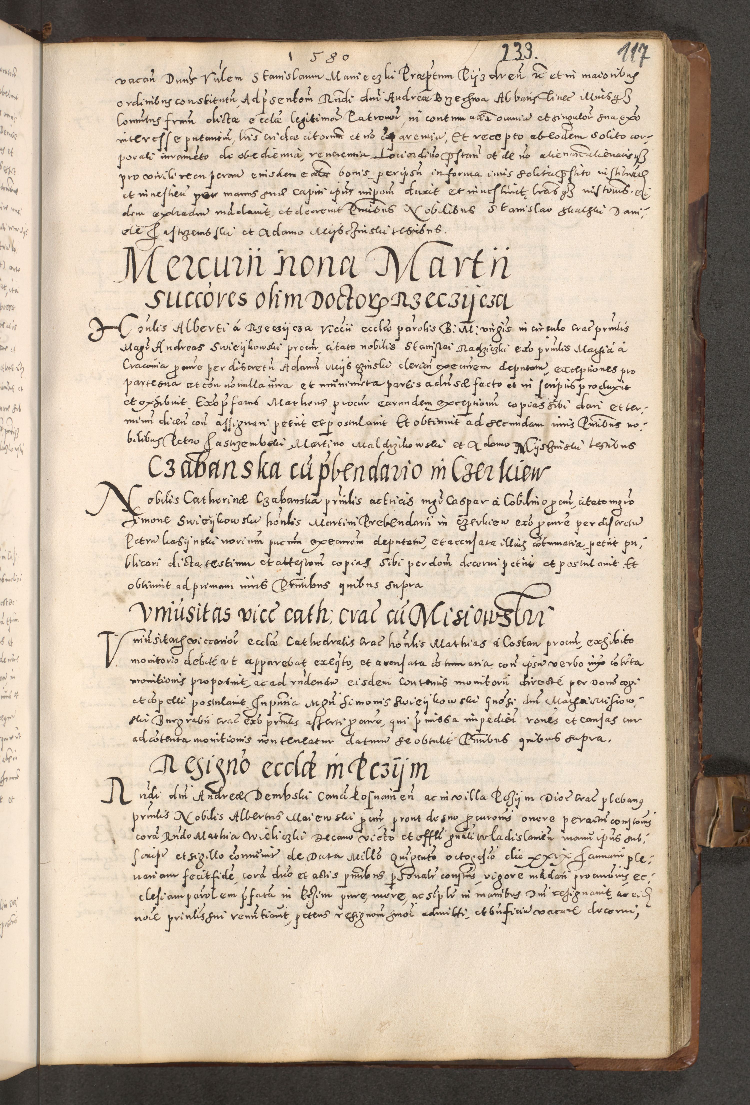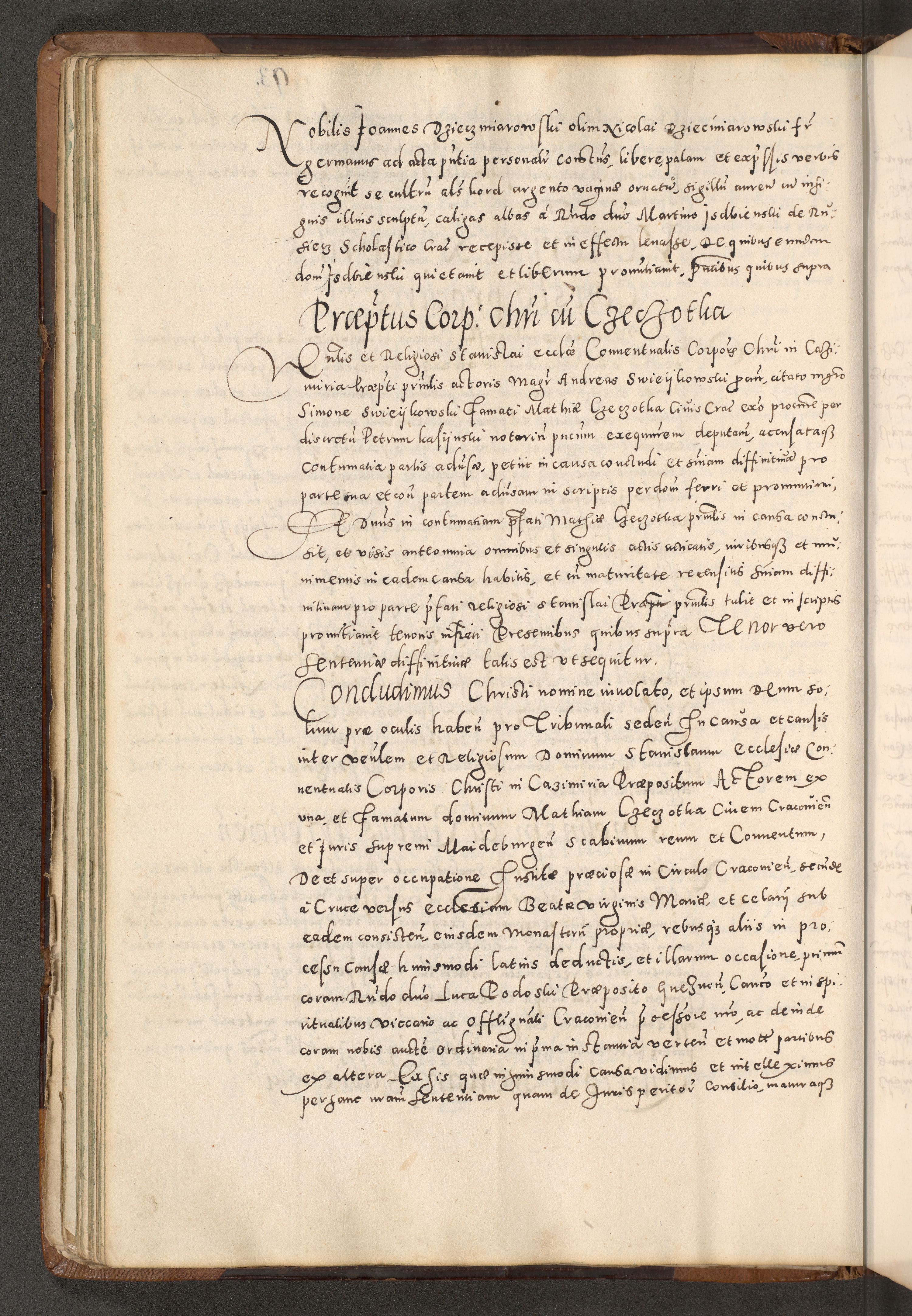 Acta actorum causarum tam diffinitivarum quam interloquutoriarum sententiarum decretorum obligationum quietatorum constuorum pro reverendum coram Reverendo Domino Alberto Nininski Custode Sandecensis Canonico et Archipresbitero Viccarioque in Spiritualibus ac Officiali Generali Cracoviensis ad Annum Domini Millesimum Qumgentesimum Septuagentesimum Nonum cuius Judictio septima Pontificat SS. nostri Domini Gregory pp. tredecimi Anno septimo inchoantur faliciter