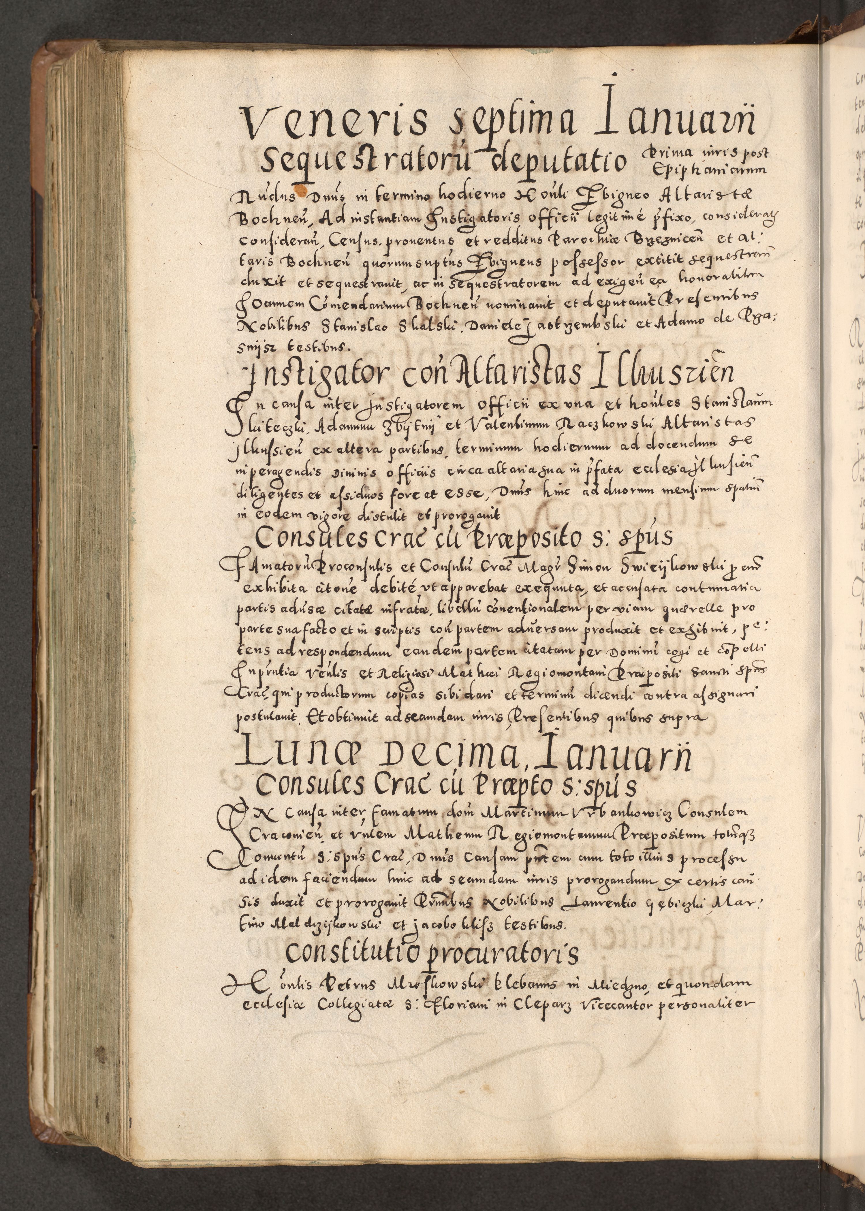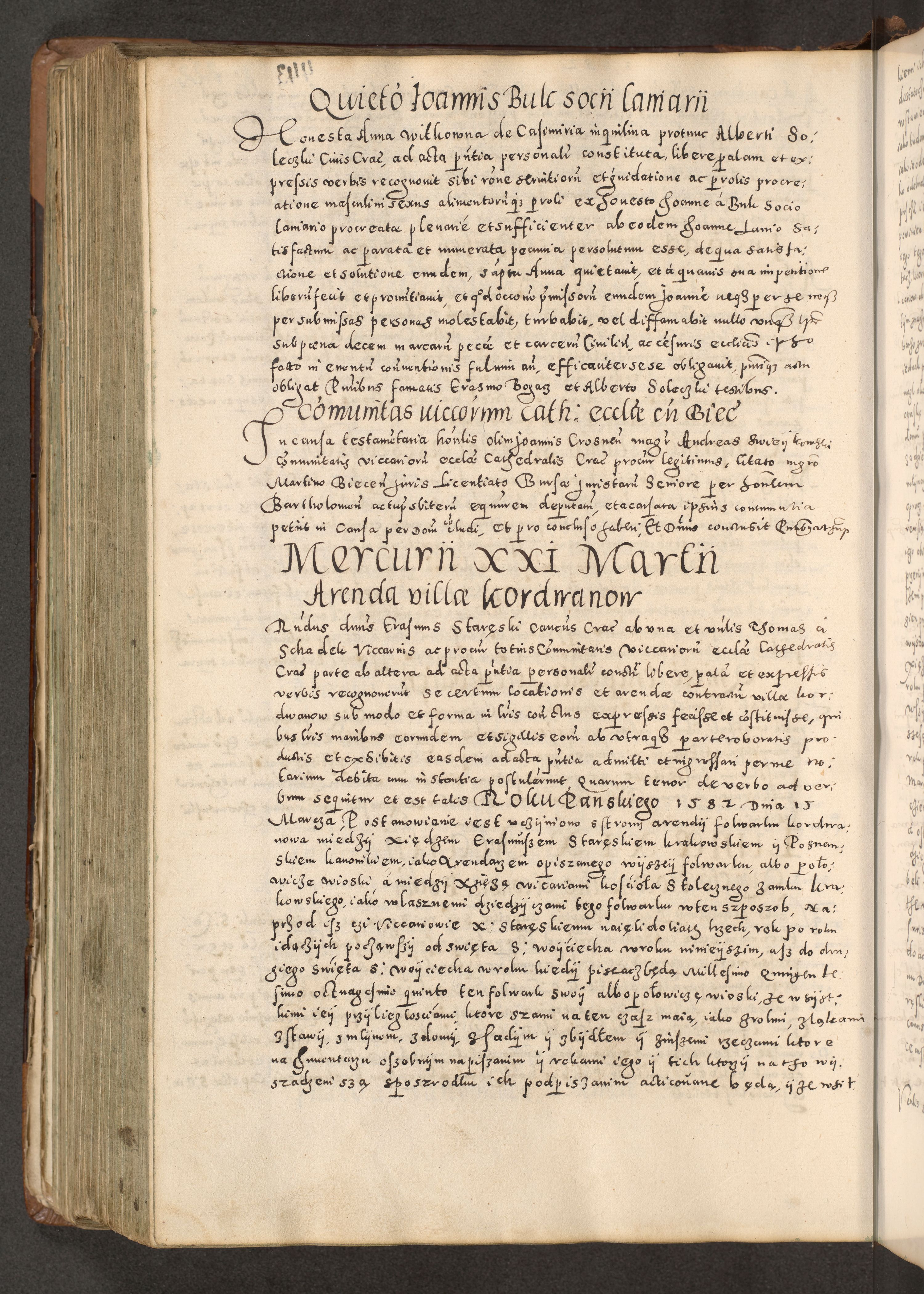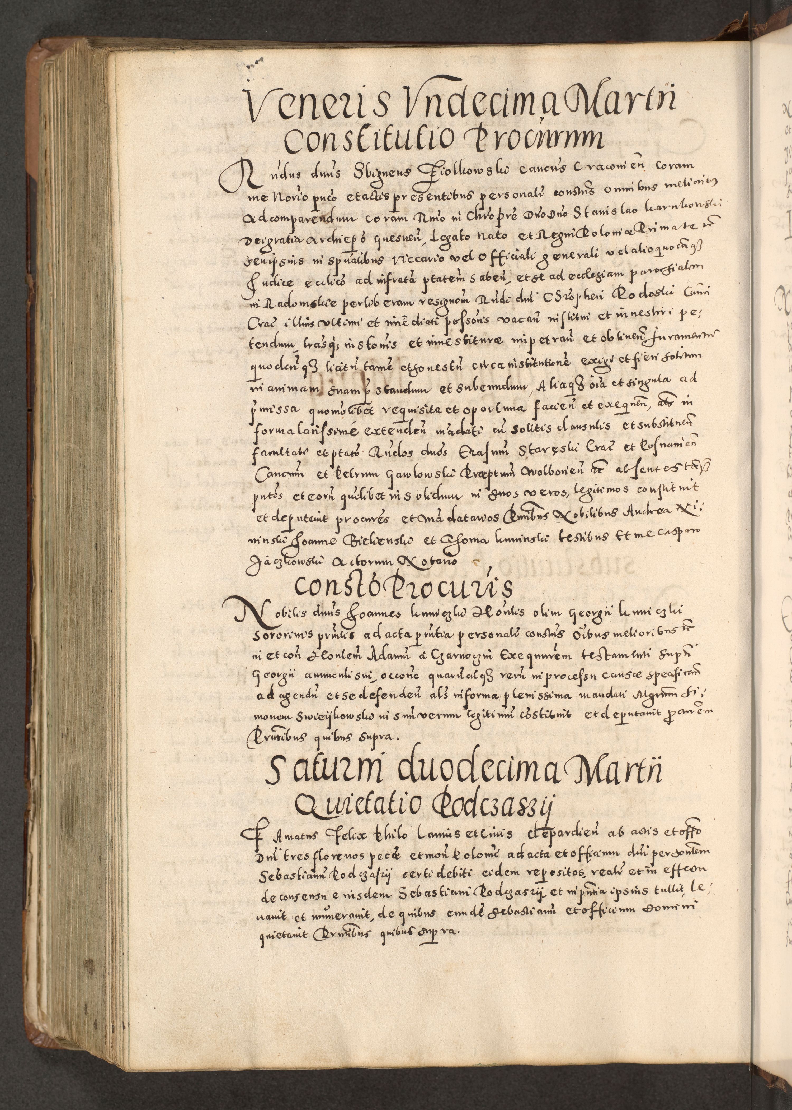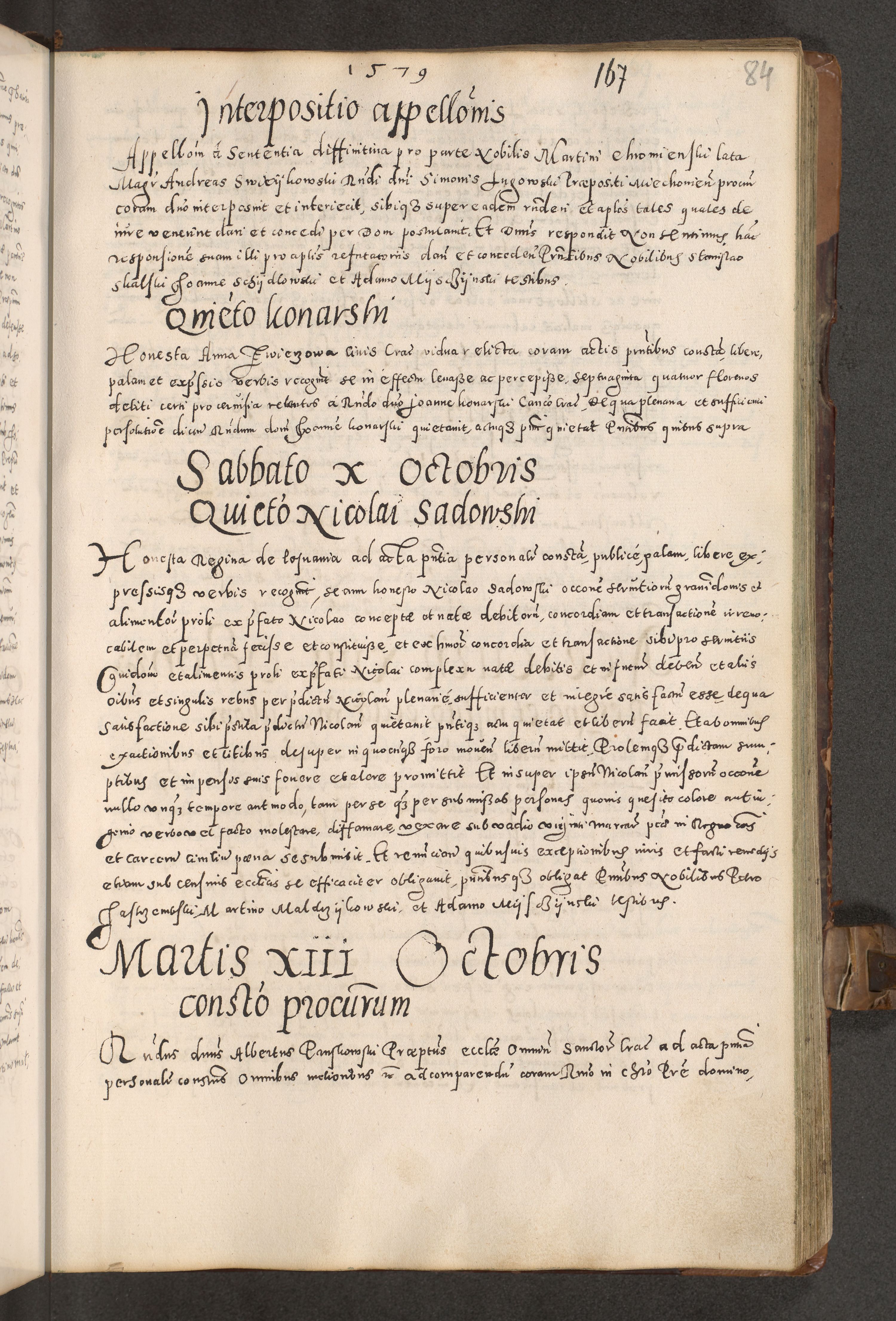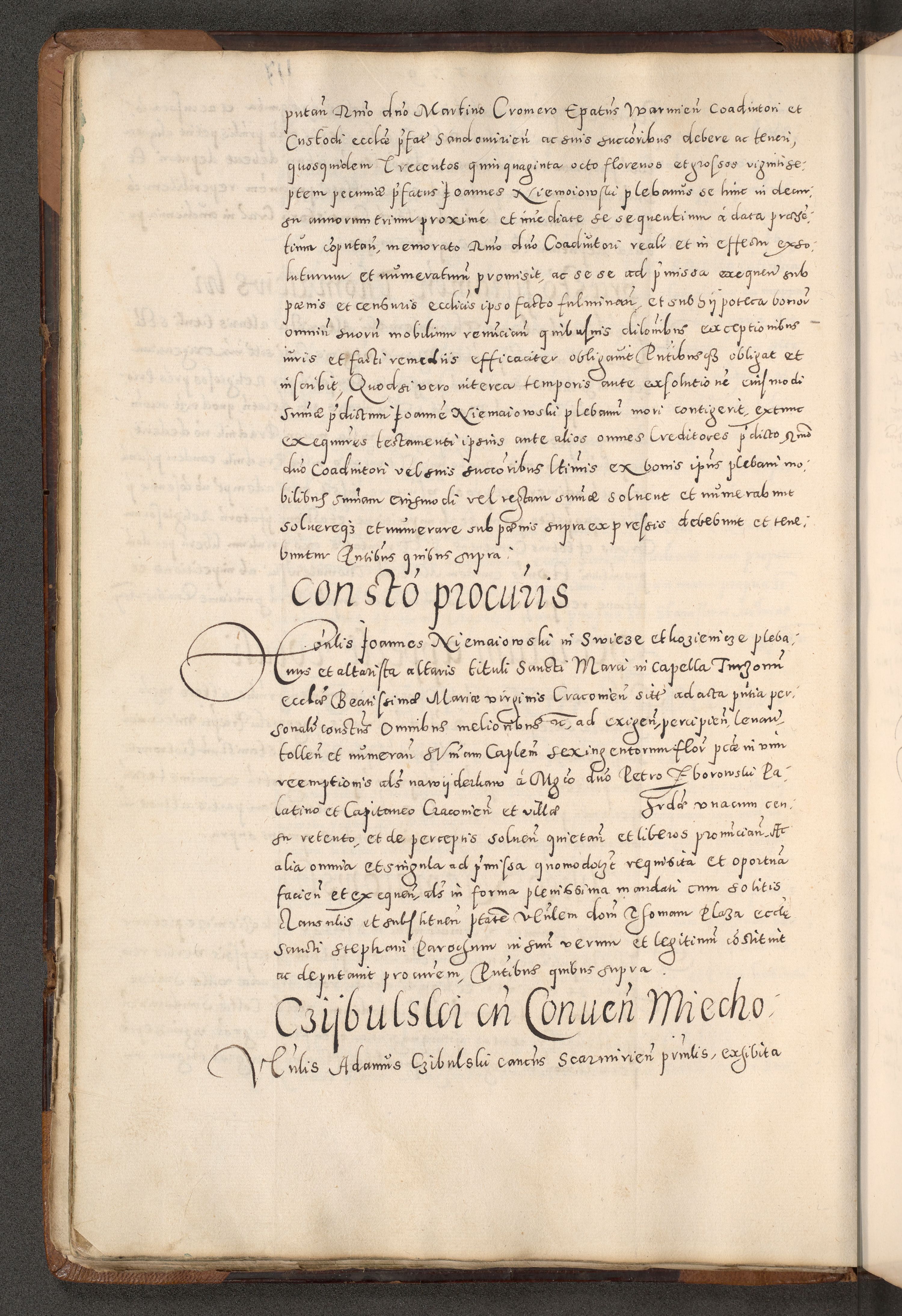Acta actorum causarum tam diffinitivarum quam interloquutoriarum sententiarum decretorum obligationum quietatorum constuorum pro reverendum coram Reverendo Domino Alberto Nininski Custode Sandecensis Canonico et Archipresbitero Viccarioque in Spiritualibus ac Officiali Generali Cracoviensis ad Annum Domini Millesimum Qumgentesimum Septuagentesimum Nonum cuius Judictio septima Pontificat SS. nostri Domini Gregory pp. tredecimi Anno septimo inchoantur faliciter