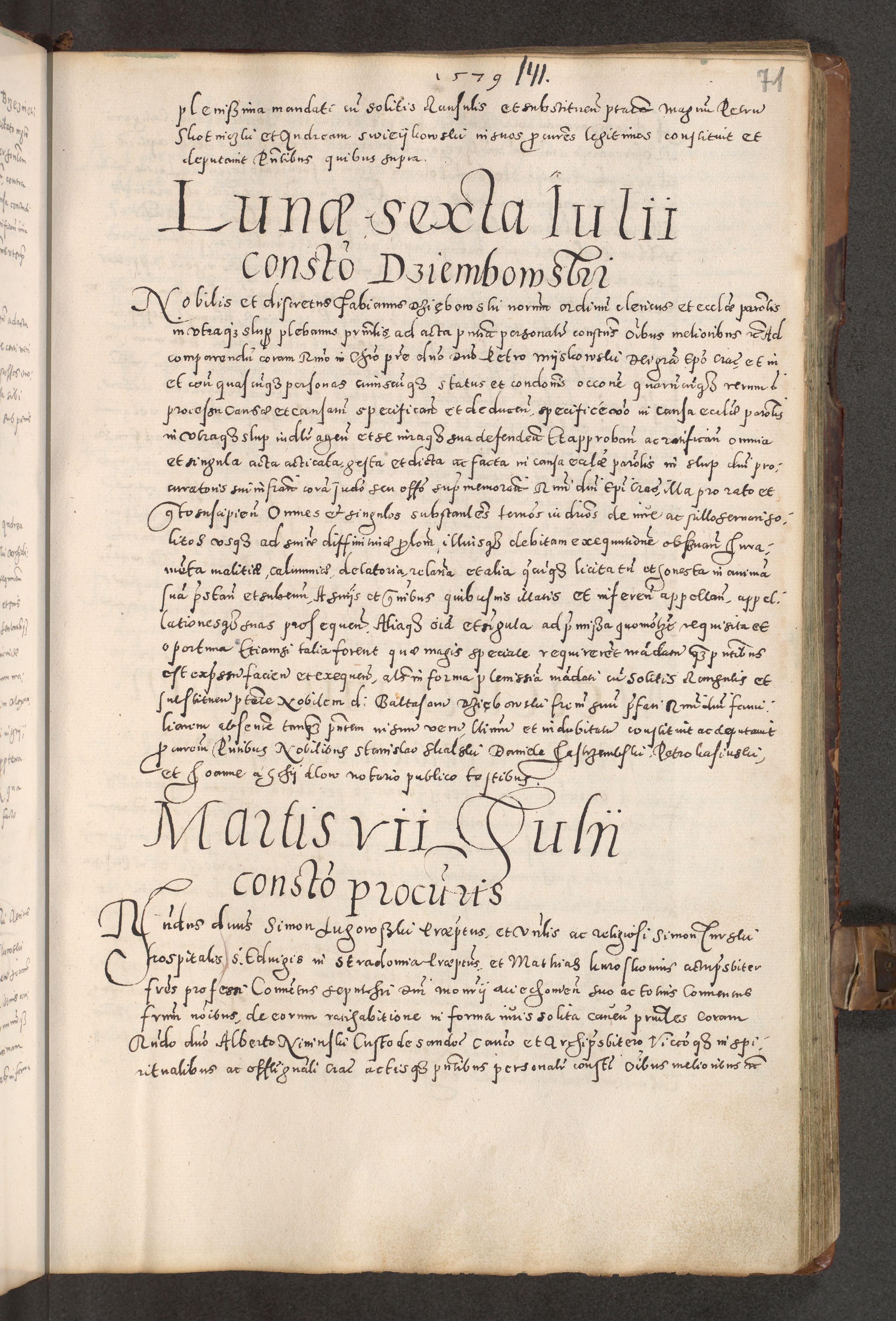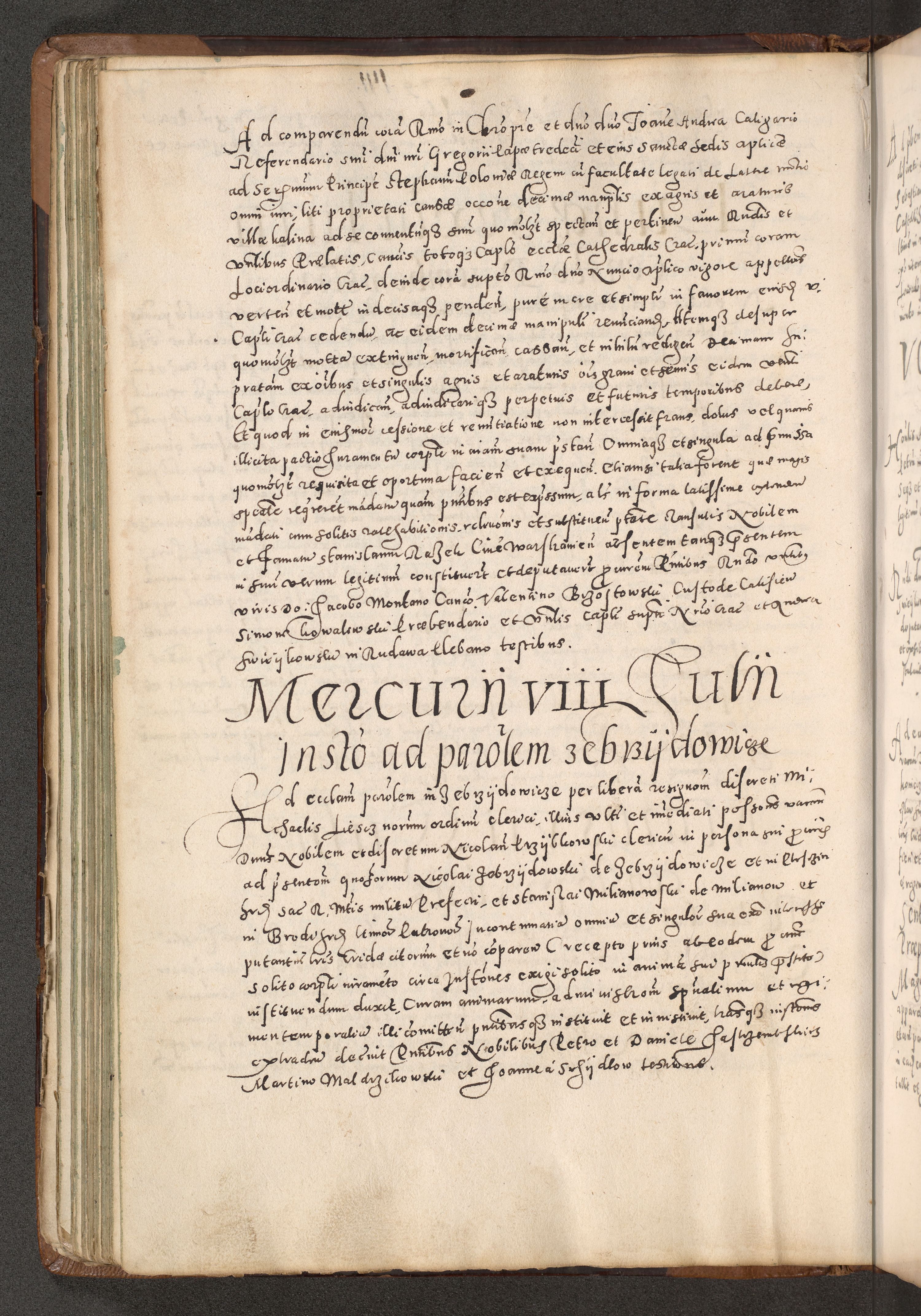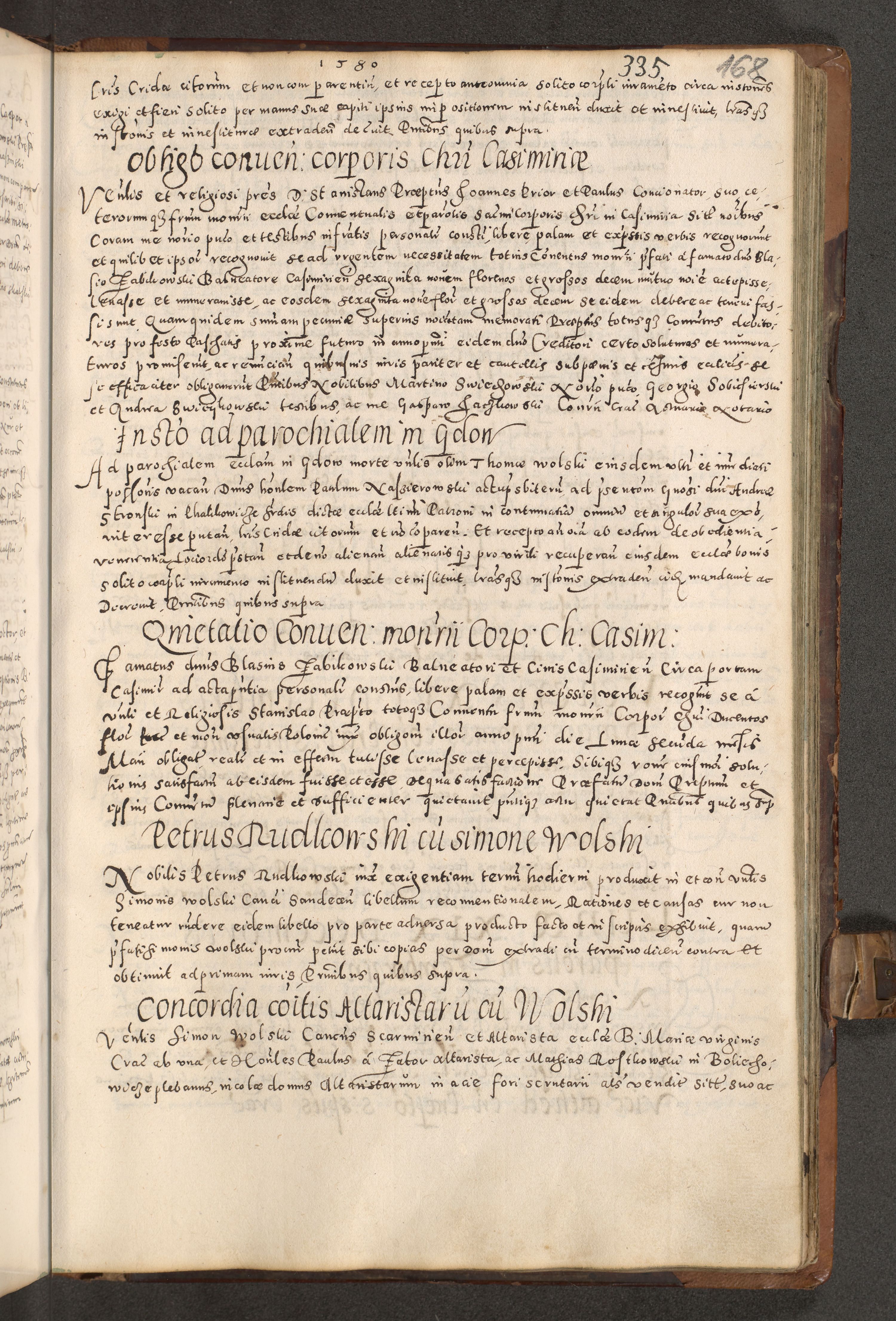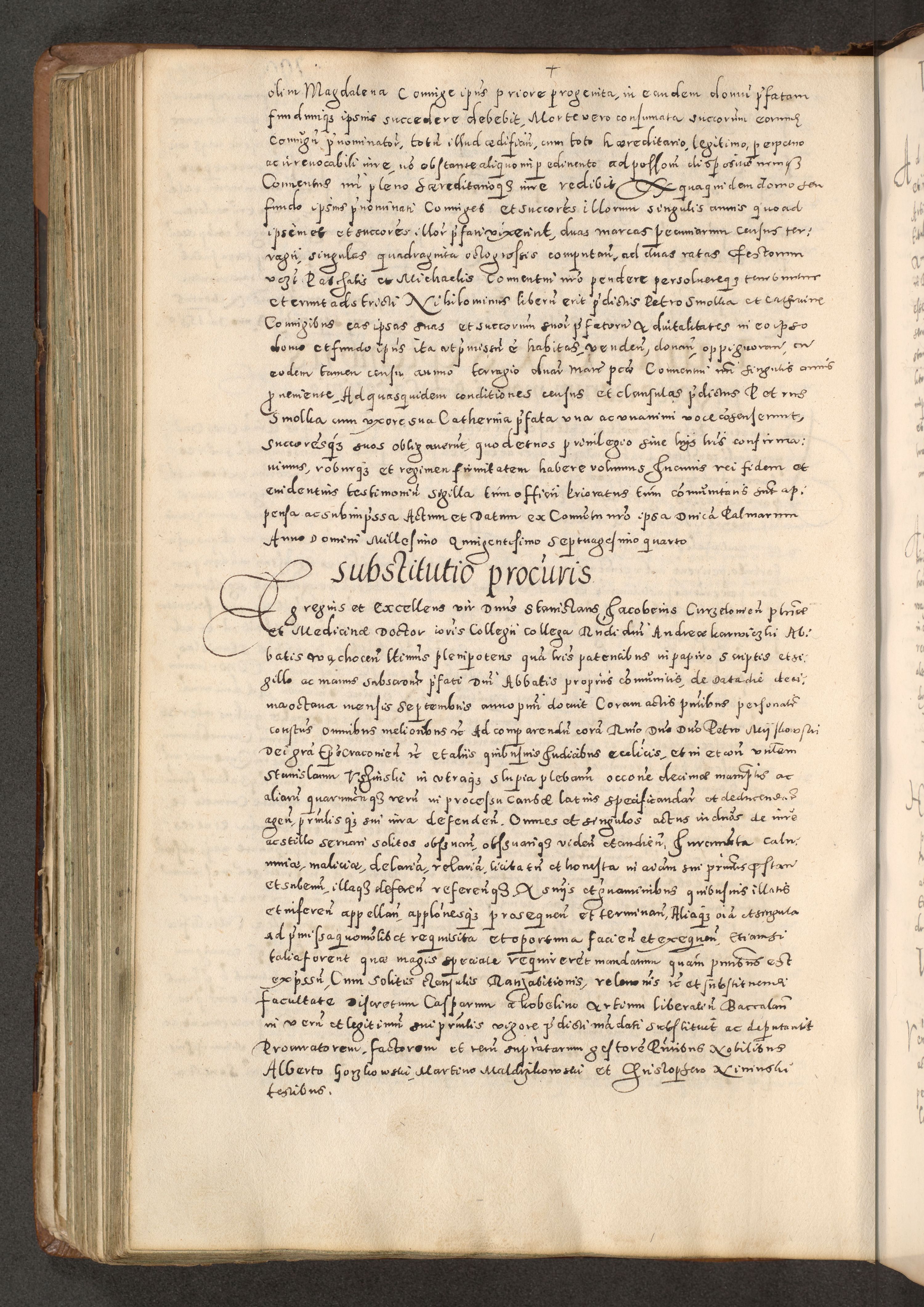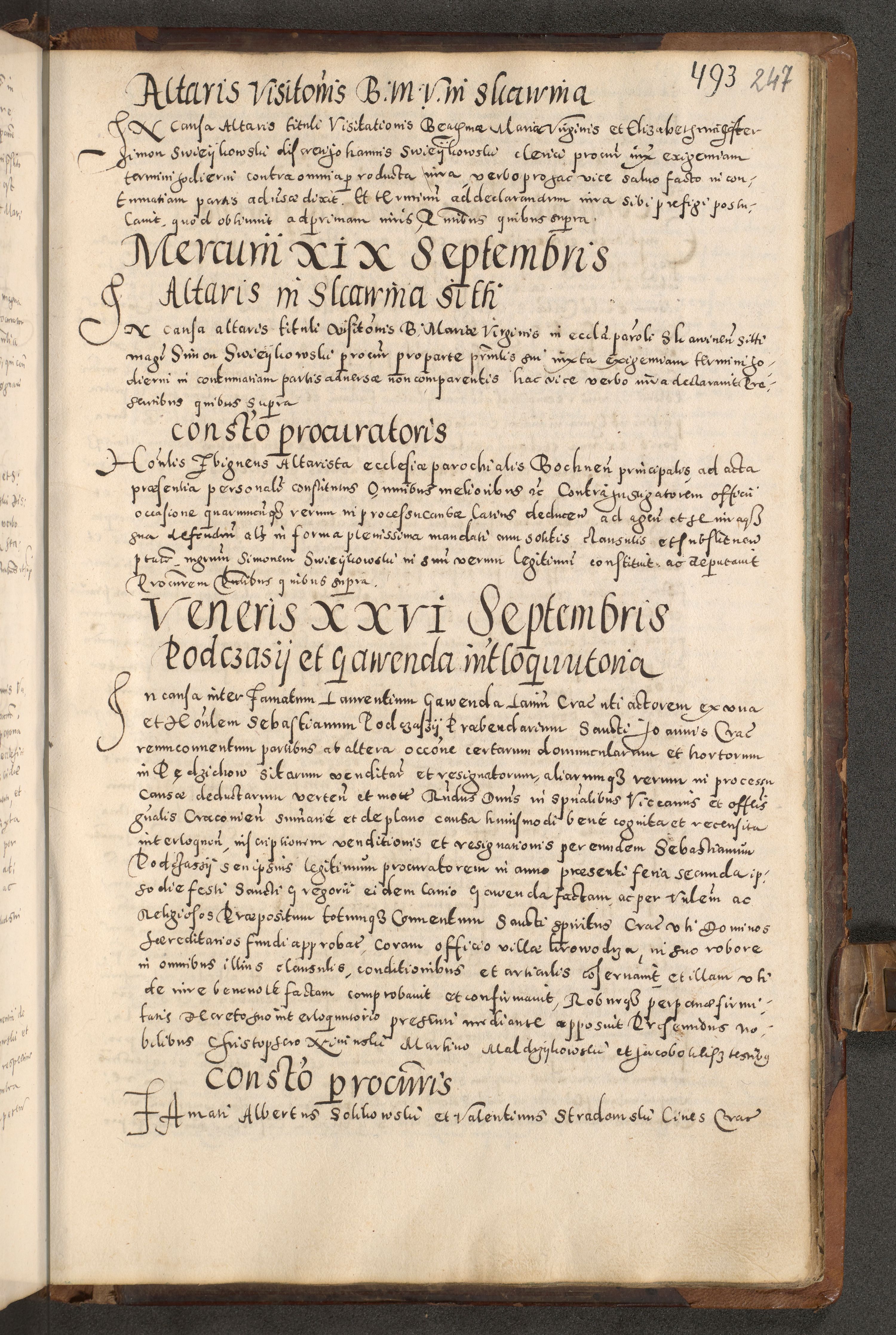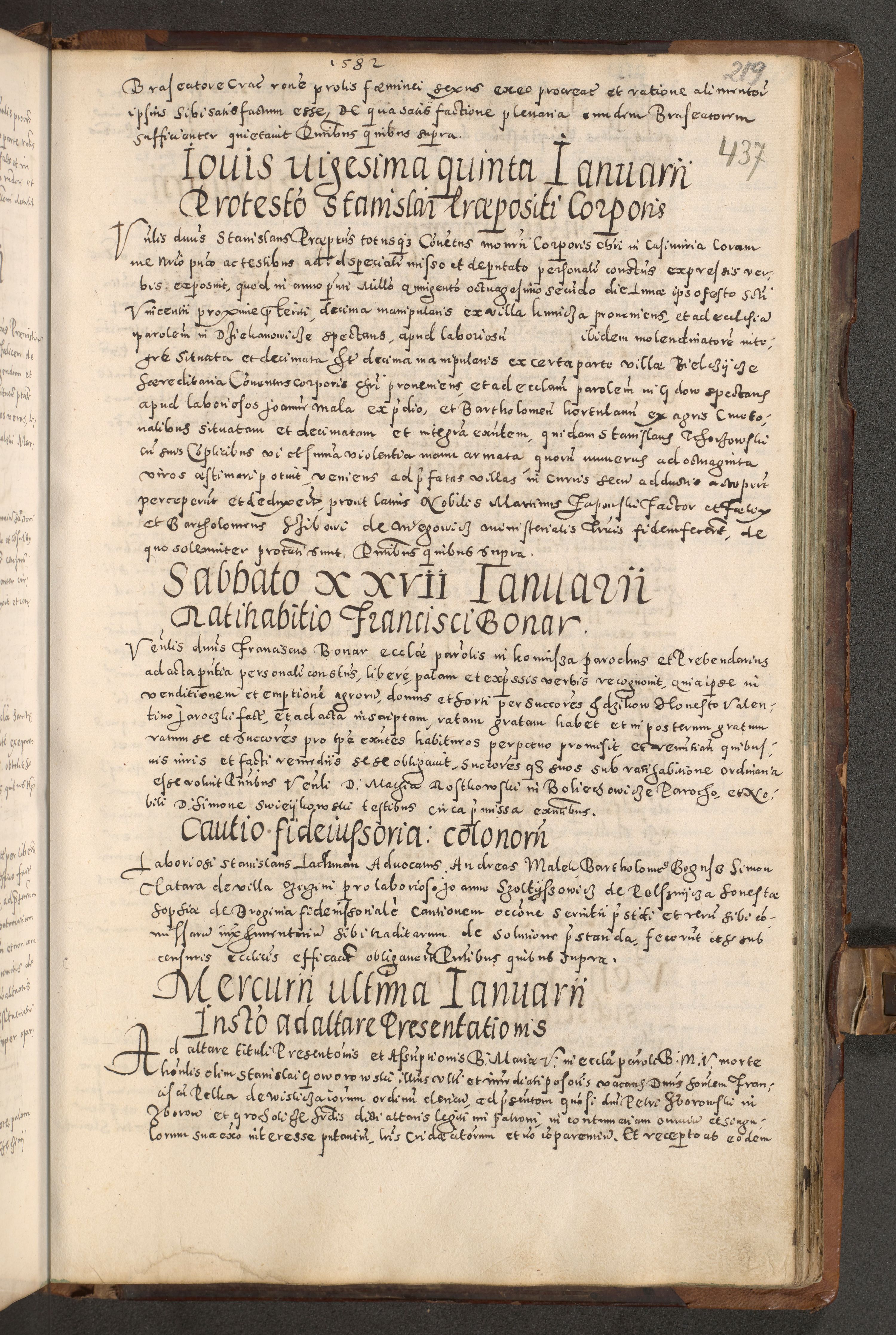Acta actorum causarum tam diffinitivarum quam interloquutoriarum sententiarum decretorum obligationum quietatorum constuorum pro reverendum coram Reverendo Domino Alberto Nininski Custode Sandecensis Canonico et Archipresbitero Viccarioque in Spiritualibus ac Officiali Generali Cracoviensis ad Annum Domini Millesimum Qumgentesimum Septuagentesimum Nonum cuius Judictio septima Pontificat SS. nostri Domini Gregory pp. tredecimi Anno septimo inchoantur faliciter