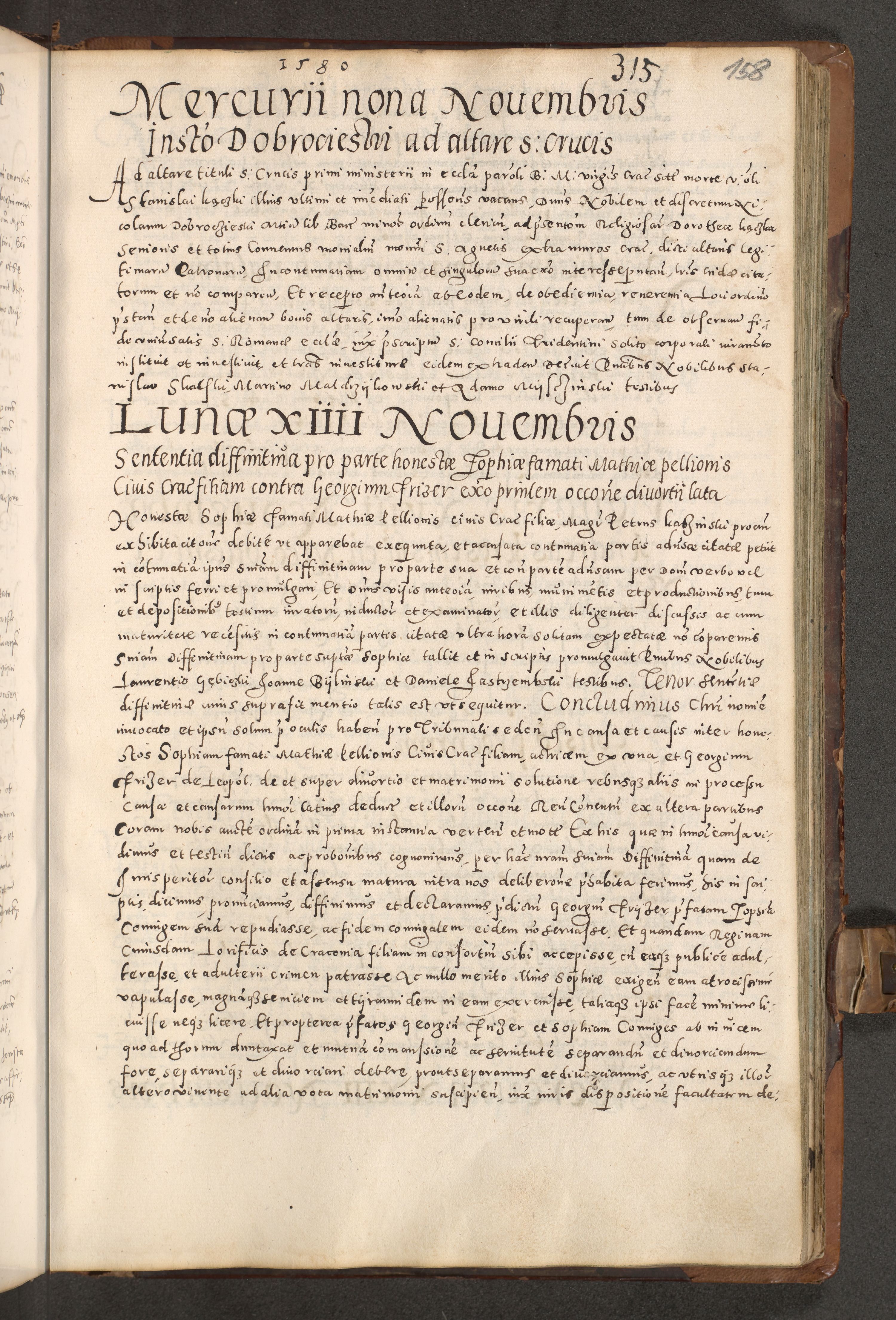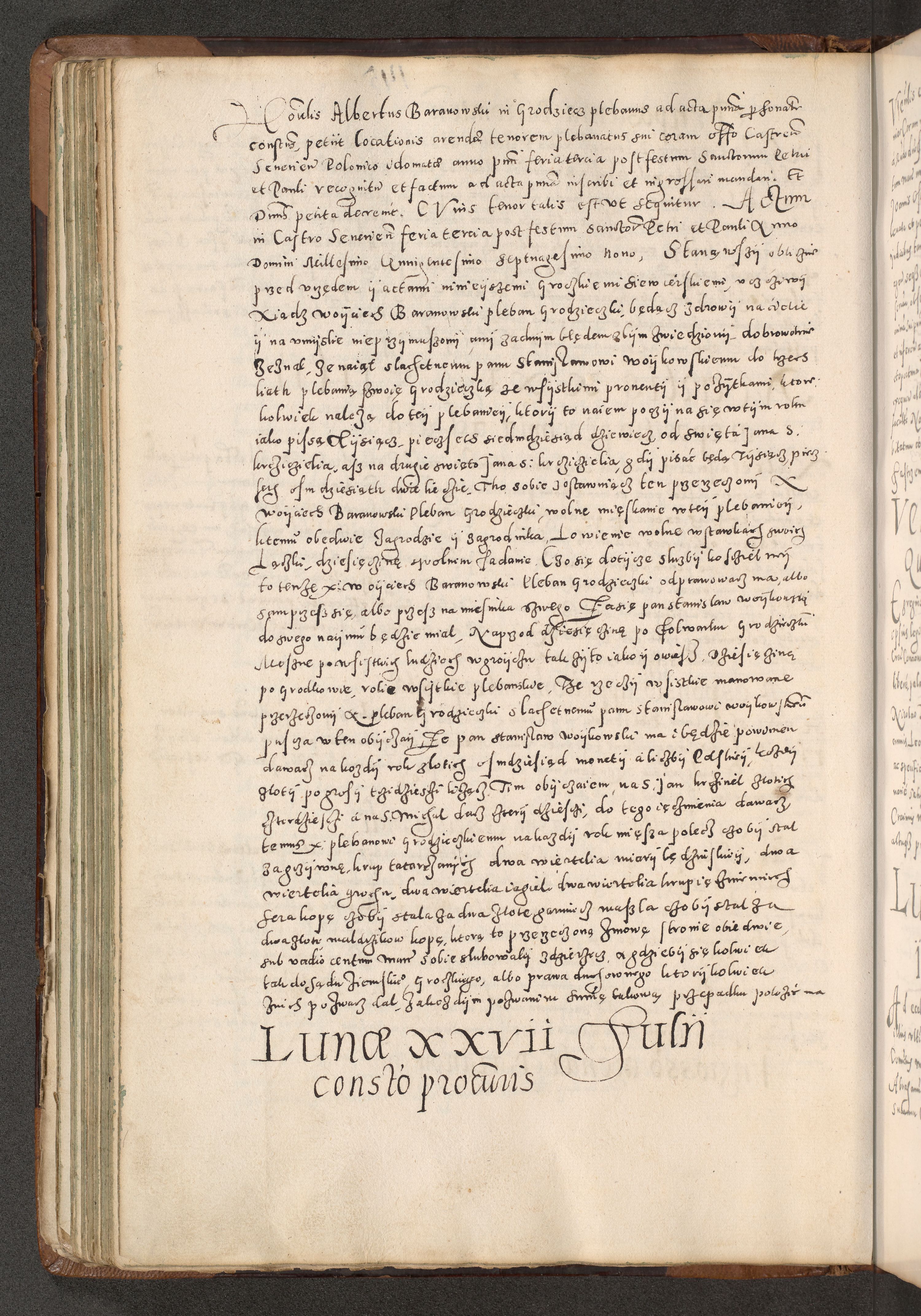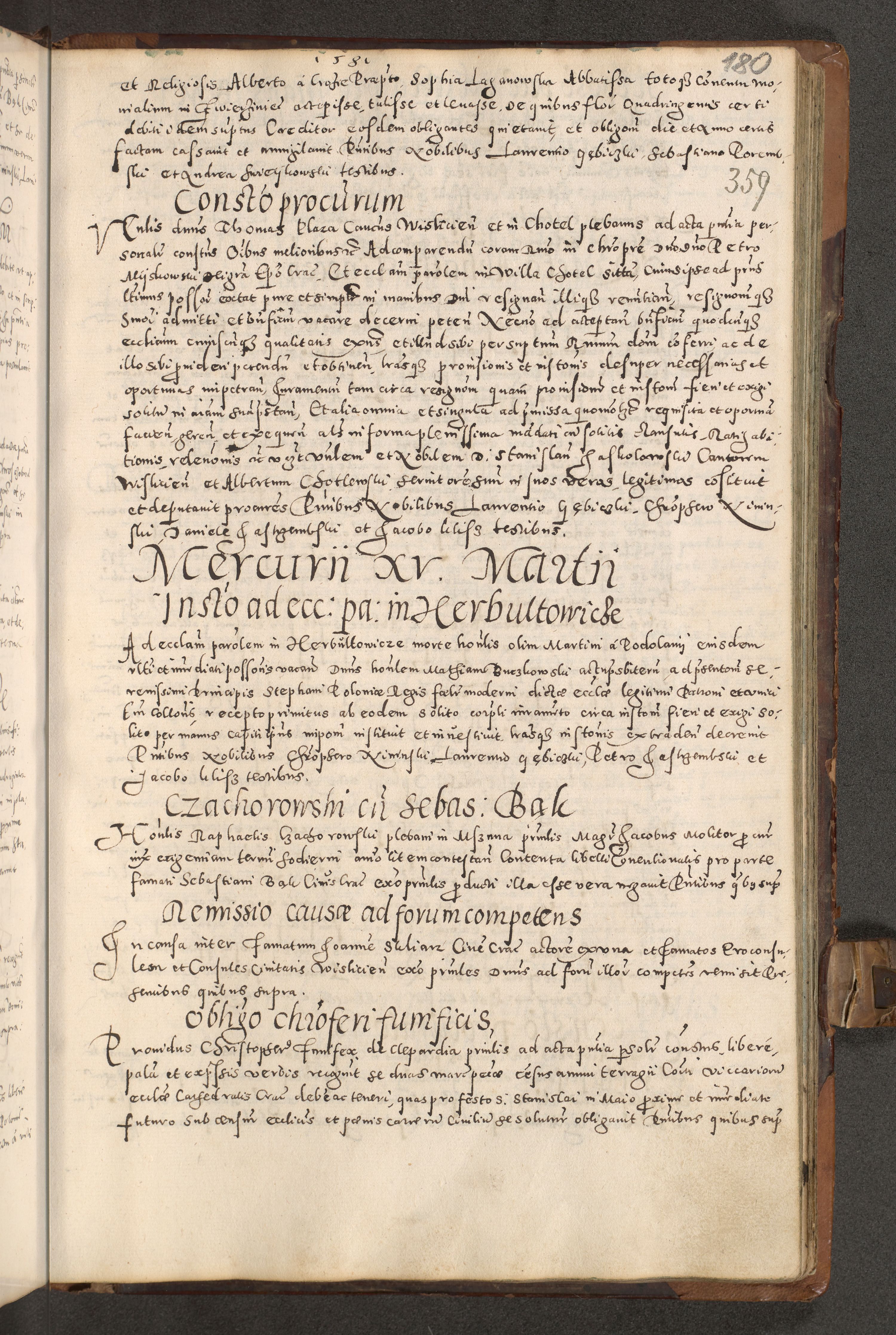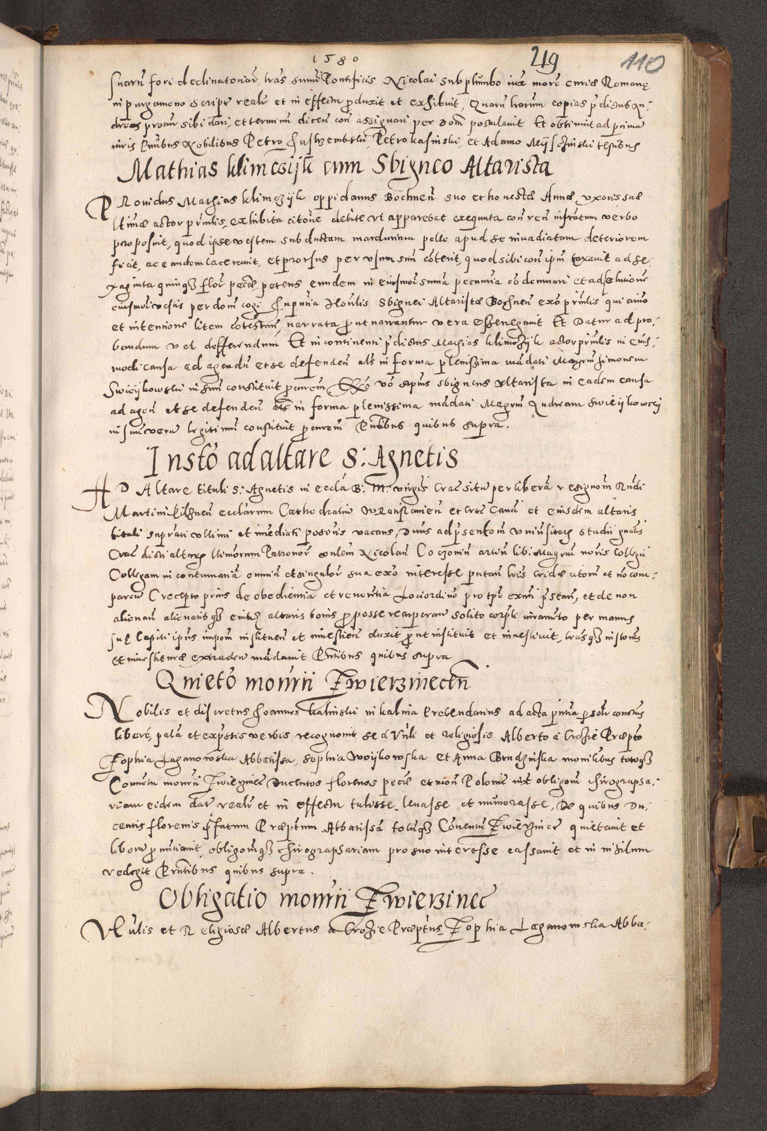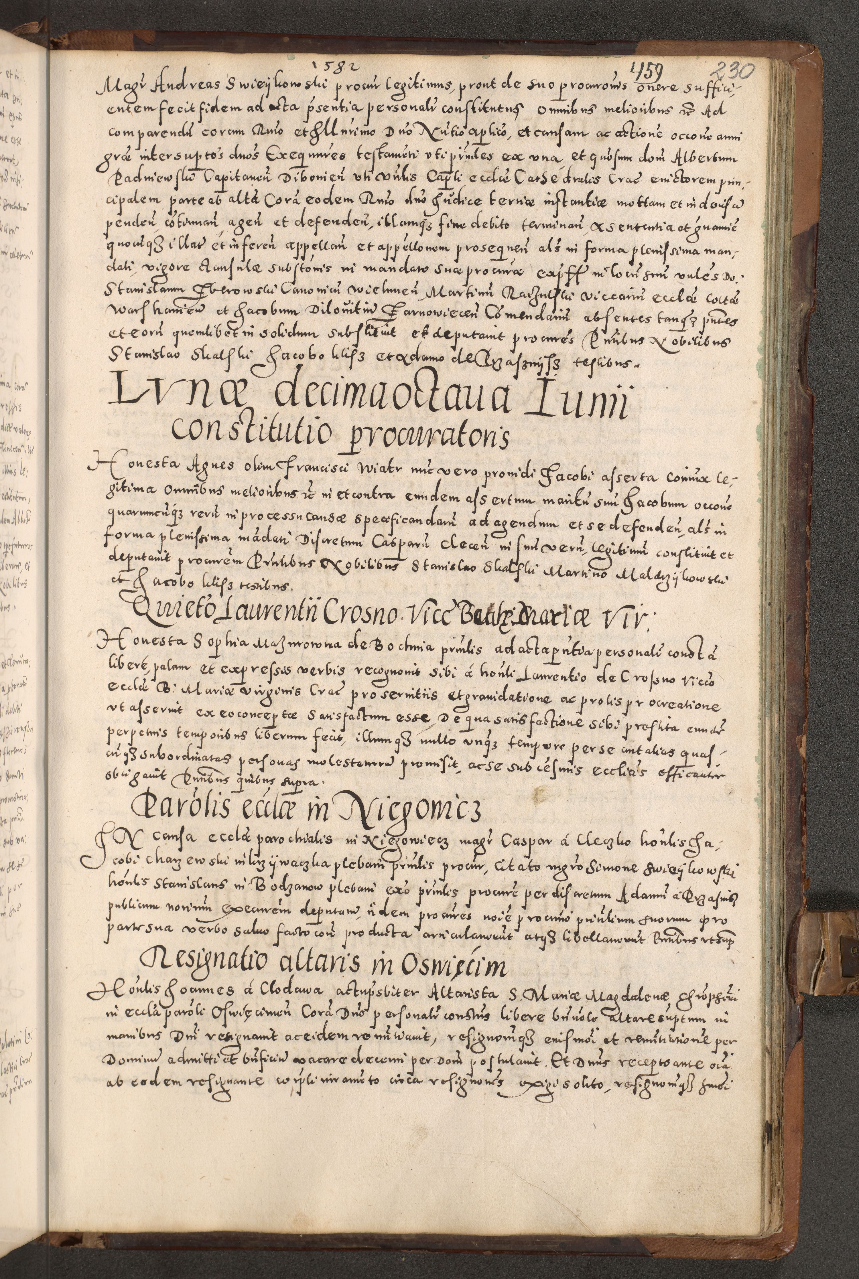 Acta actorum causarum tam diffinitivarum quam interloquutoriarum sententiarum decretorum obligationum quietatorum constuorum pro reverendum coram Reverendo Domino Alberto Nininski Custode Sandecensis Canonico et Archipresbitero Viccarioque in Spiritualibus ac Officiali Generali Cracoviensis ad Annum Domini Millesimum Qumgentesimum Septuagentesimum Nonum cuius Judictio septima Pontificat SS. nostri Domini Gregory pp. tredecimi Anno septimo inchoantur faliciter