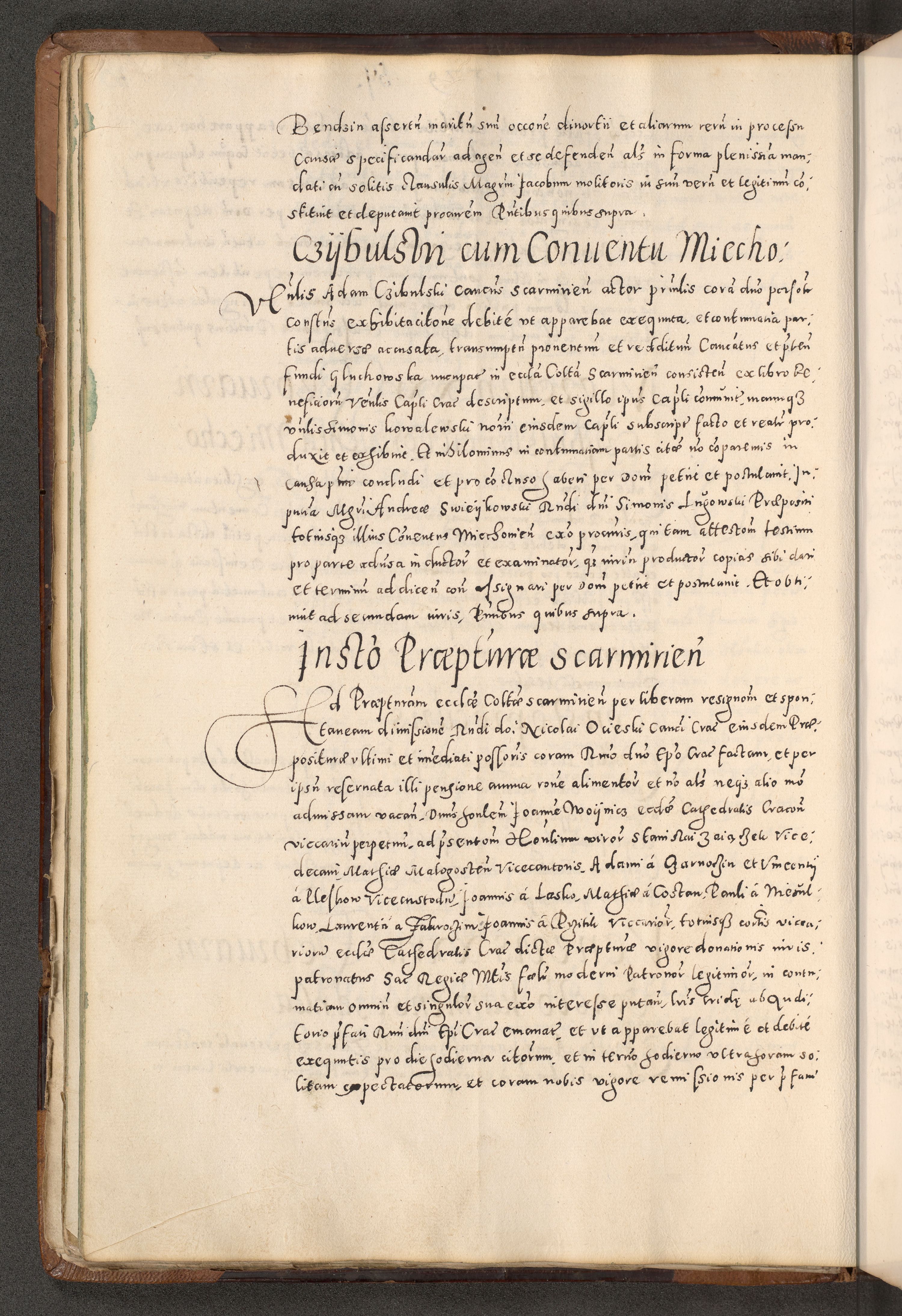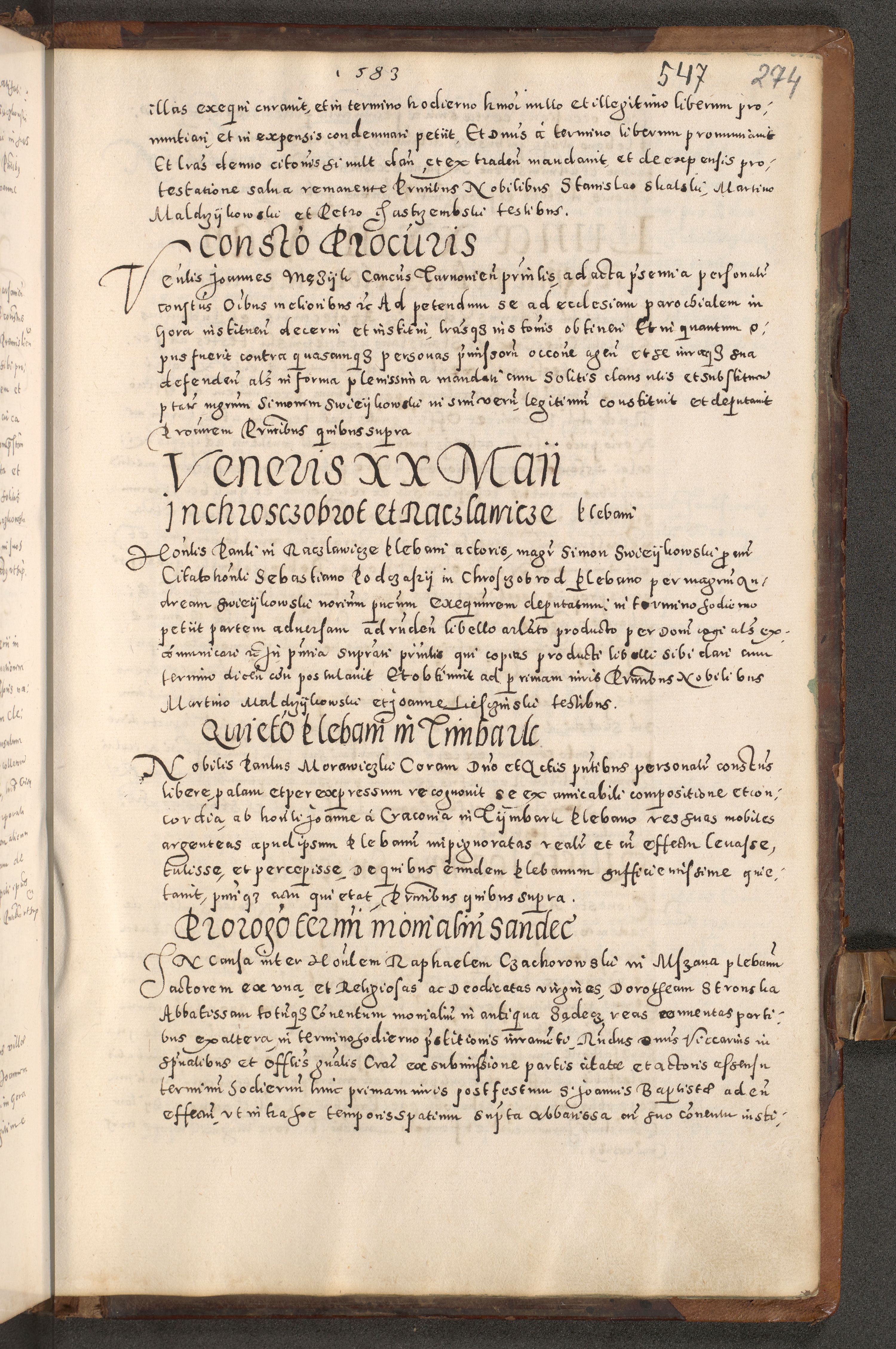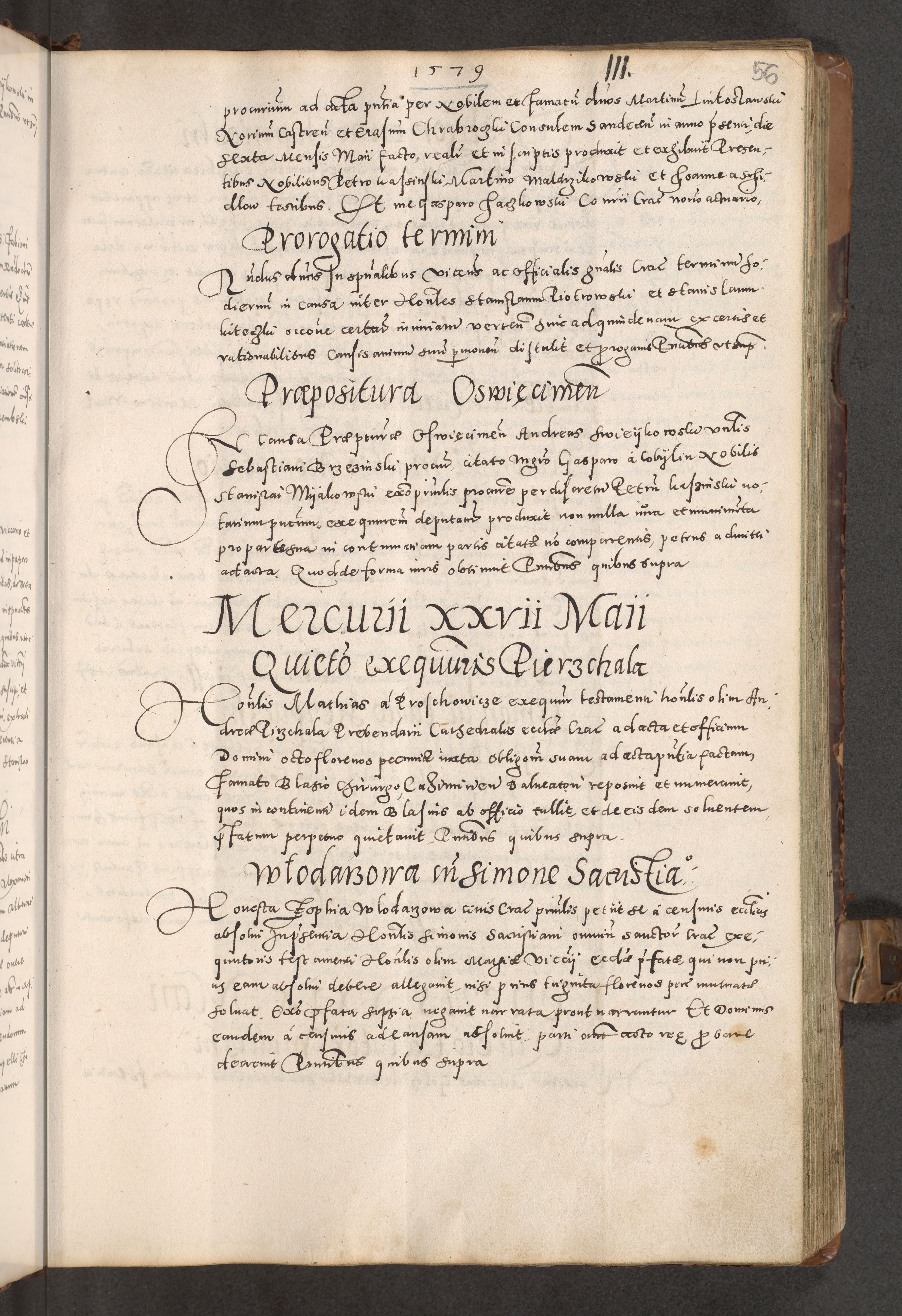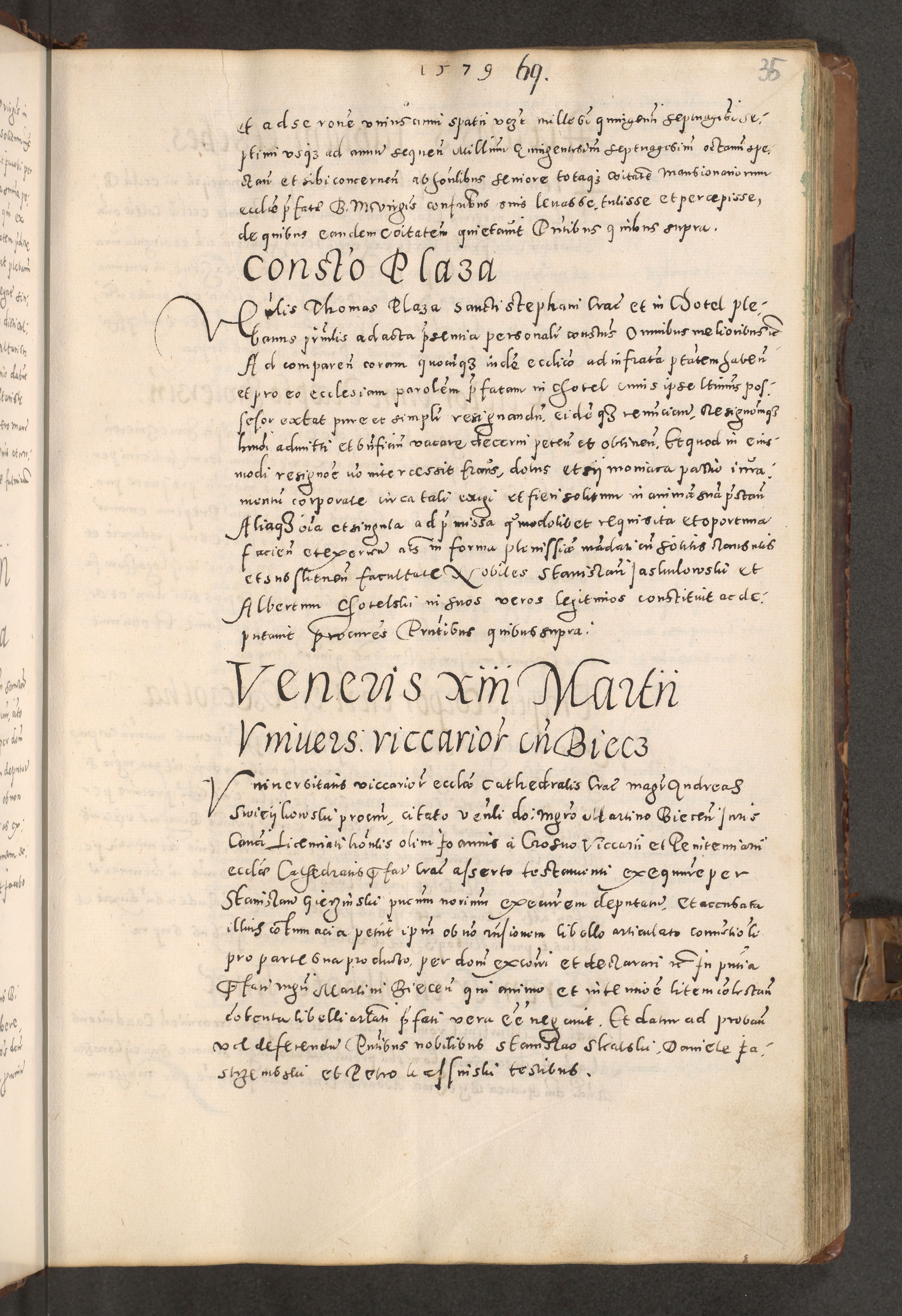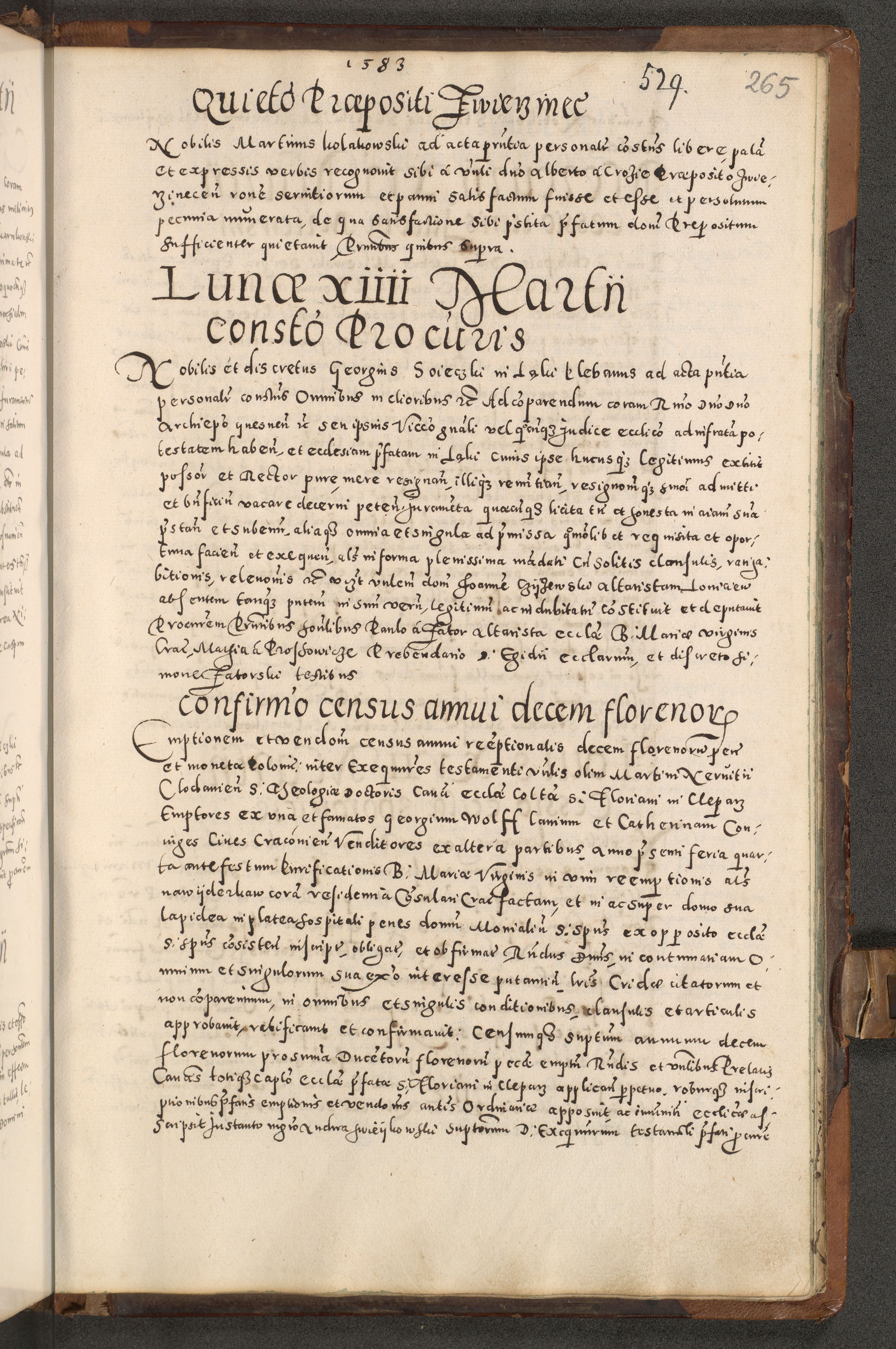 Acta actorum causarum tam diffinitivarum quam interloquutoriarum sententiarum decretorum obligationum quietatorum constuorum pro reverendum coram Reverendo Domino Alberto Nininski Custode Sandecensis Canonico et Archipresbitero Viccarioque in Spiritualibus ac Officiali Generali Cracoviensis ad Annum Domini Millesimum Qumgentesimum Septuagentesimum Nonum cuius Judictio septima Pontificat SS. nostri Domini Gregory pp. tredecimi Anno septimo inchoantur faliciter