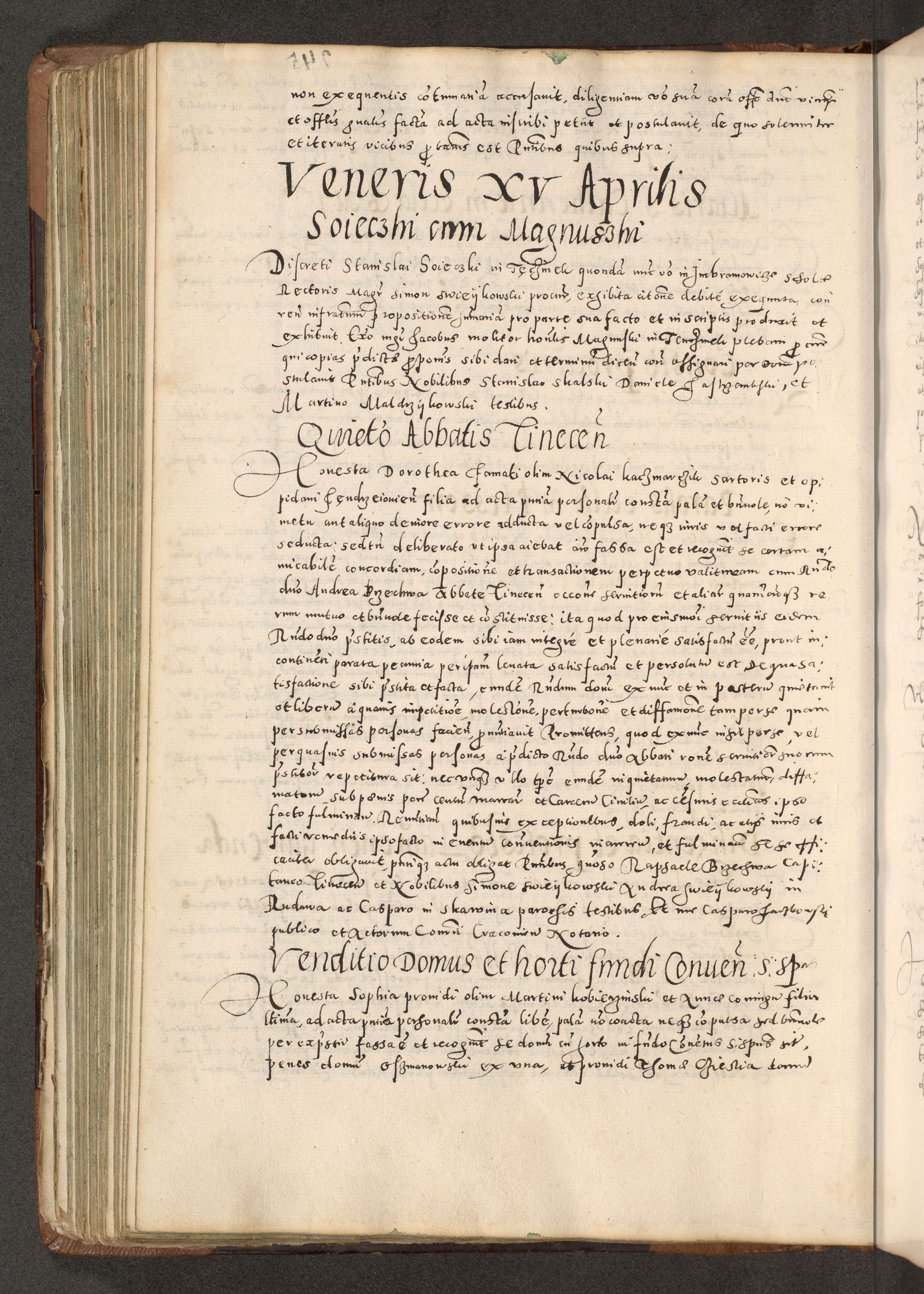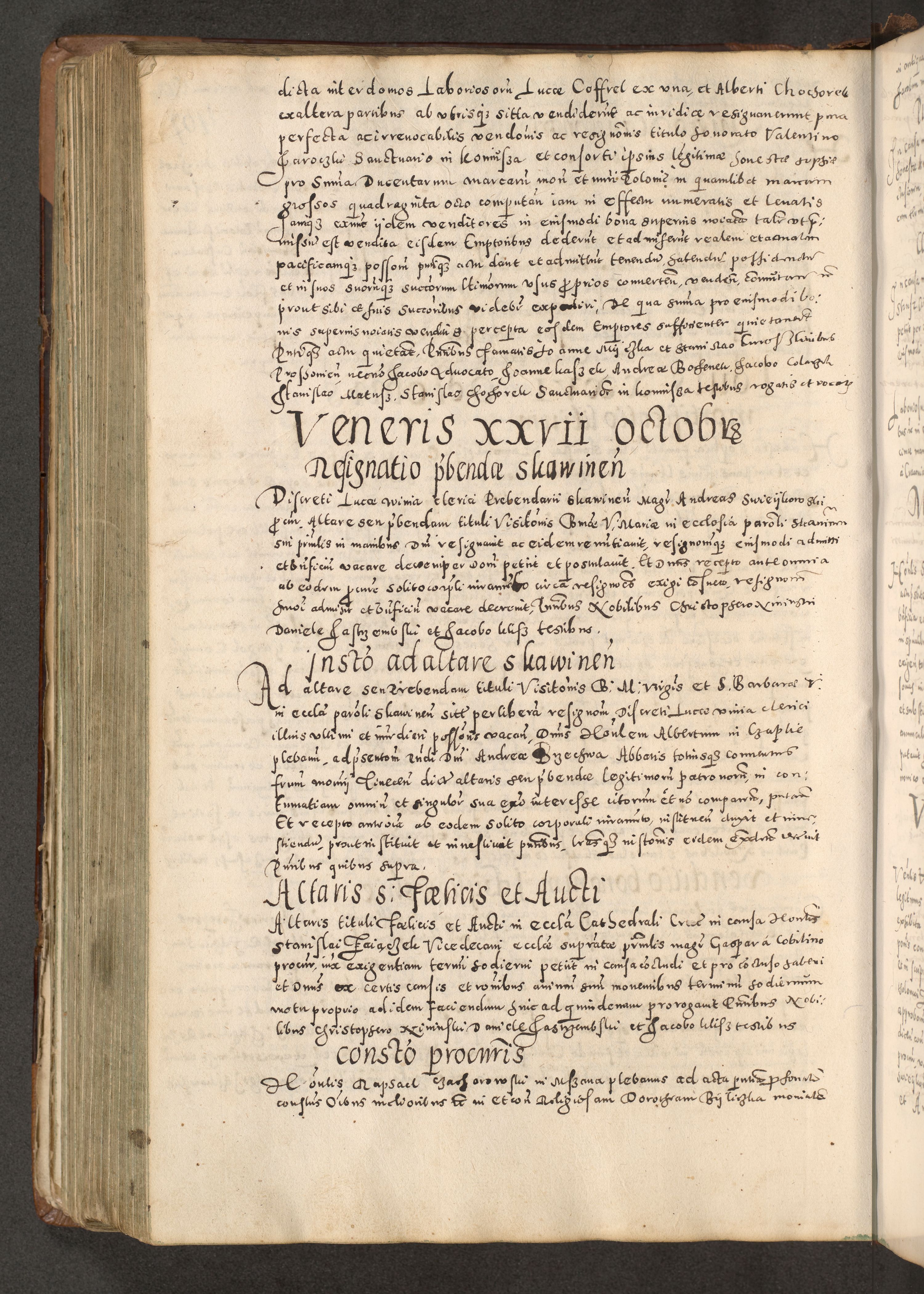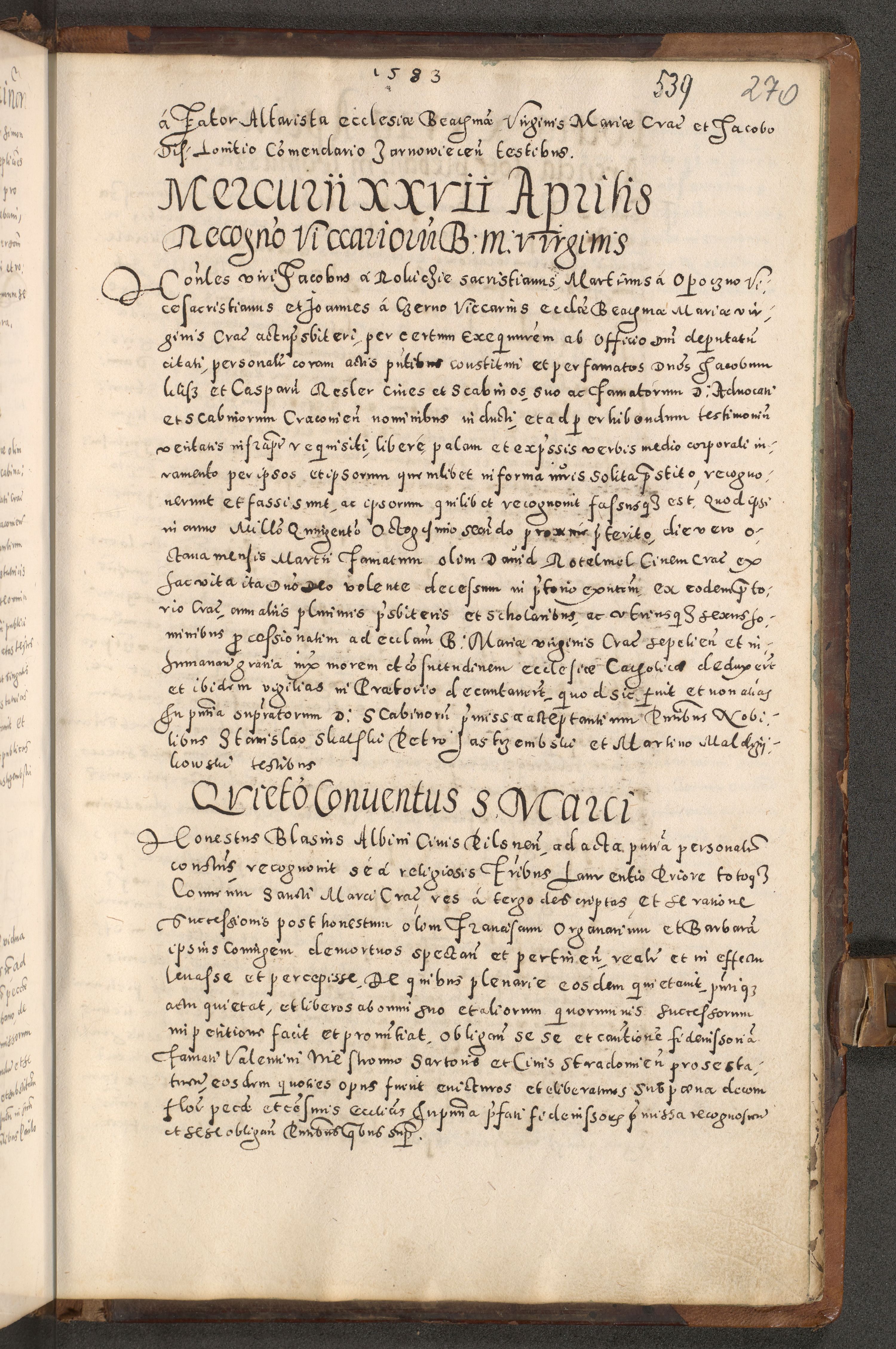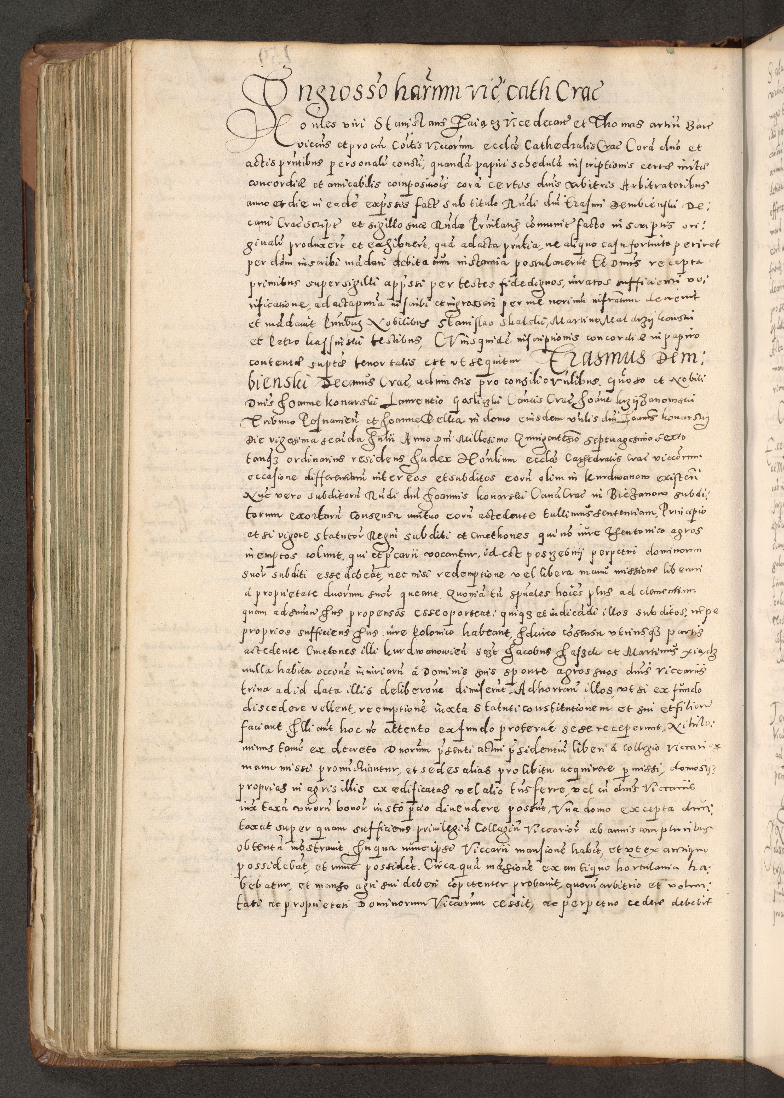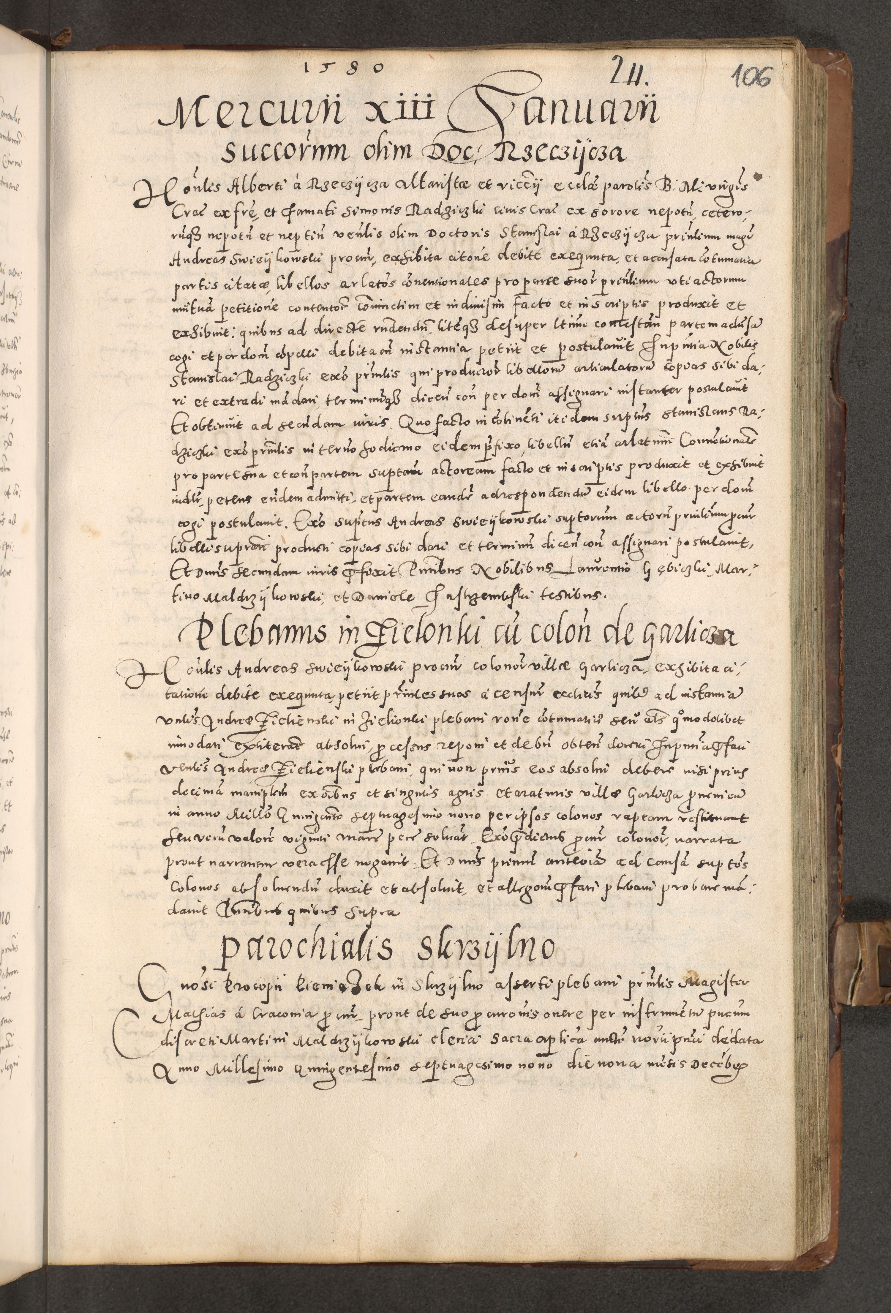 Acta actorum causarum tam diffinitivarum quam interloquutoriarum sententiarum decretorum obligationum quietatorum constuorum pro reverendum coram Reverendo Domino Alberto Nininski Custode Sandecensis Canonico et Archipresbitero Viccarioque in Spiritualibus ac Officiali Generali Cracoviensis ad Annum Domini Millesimum Qumgentesimum Septuagentesimum Nonum cuius Judictio septima Pontificat SS. nostri Domini Gregory pp. tredecimi Anno septimo inchoantur faliciter