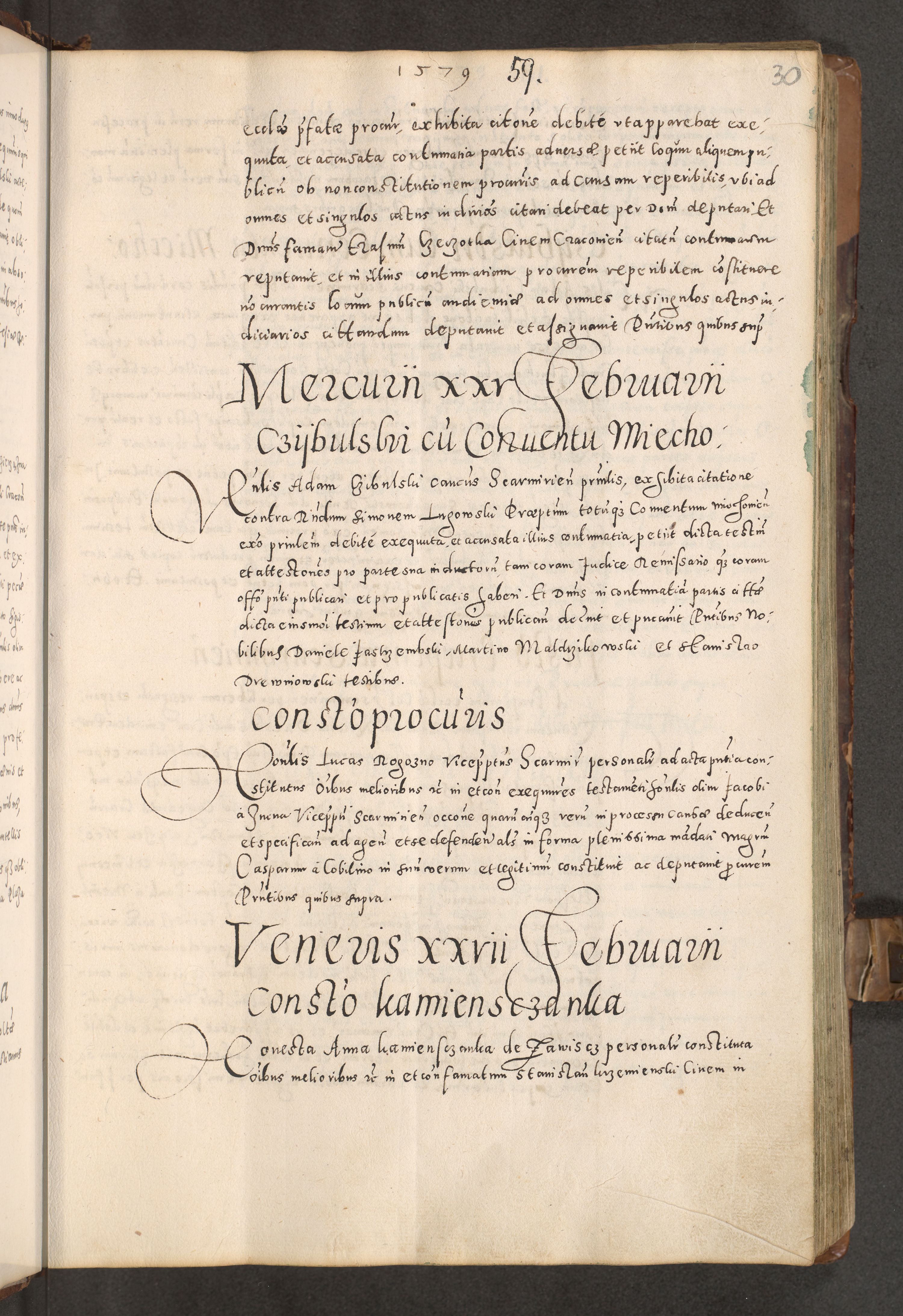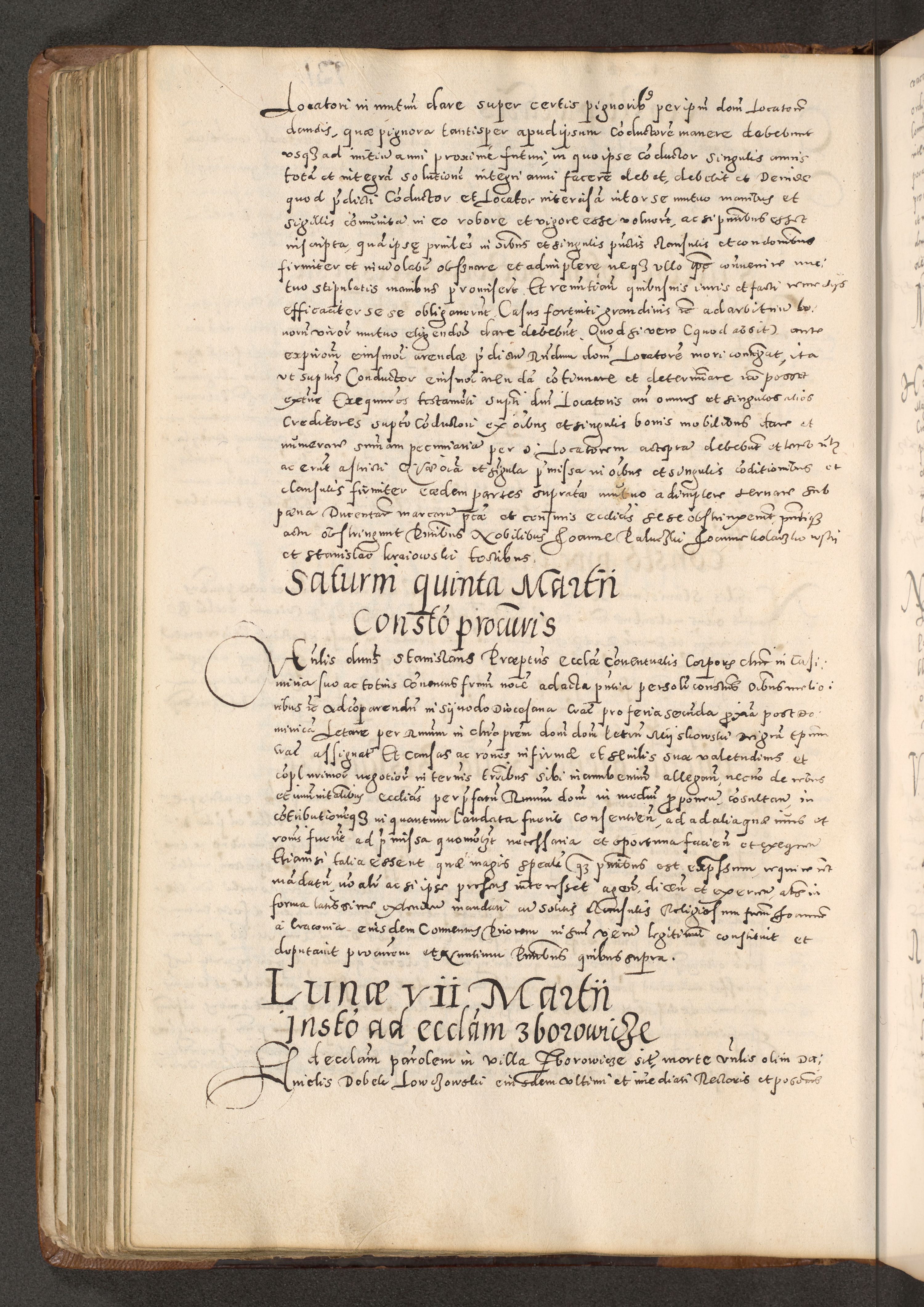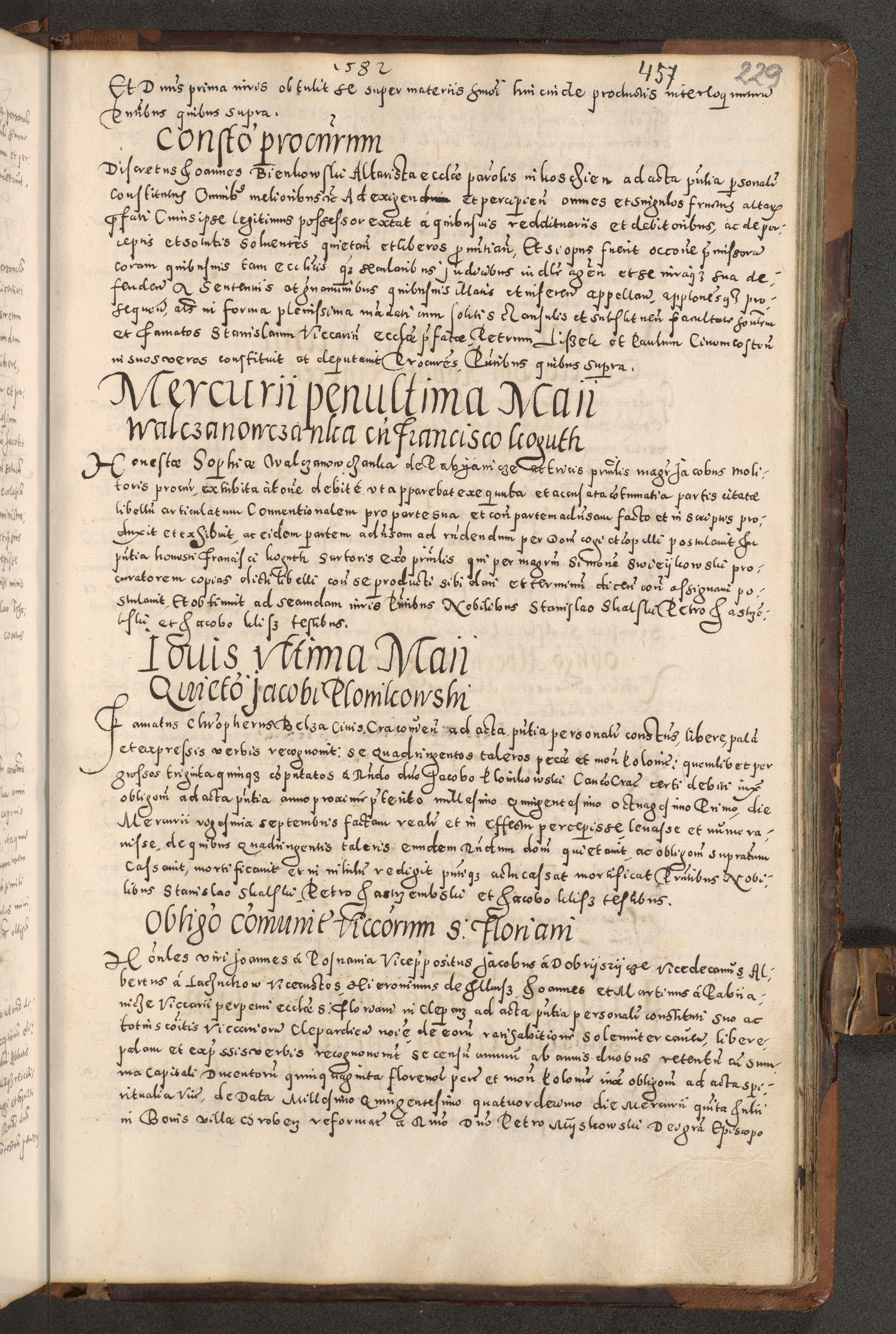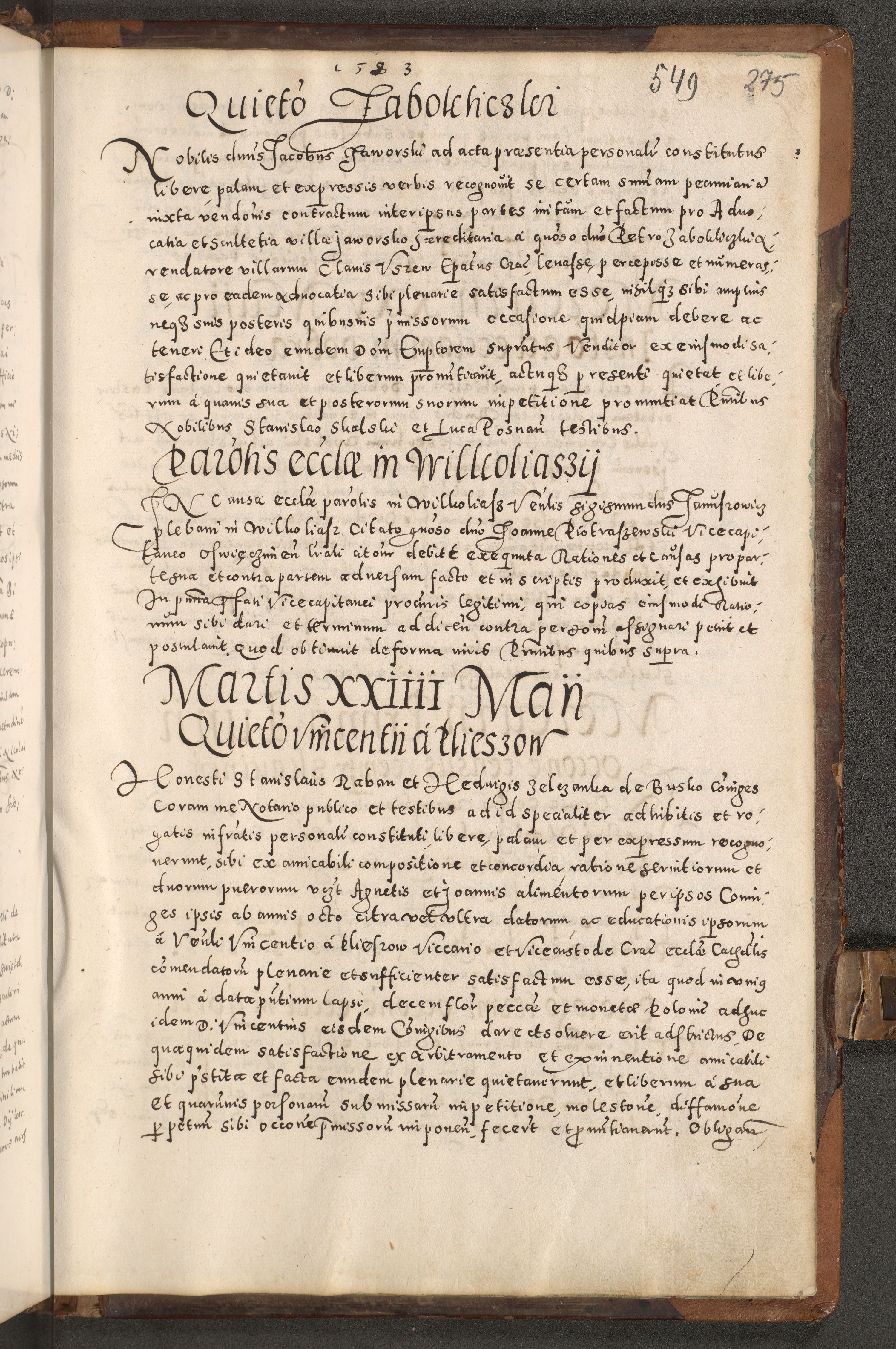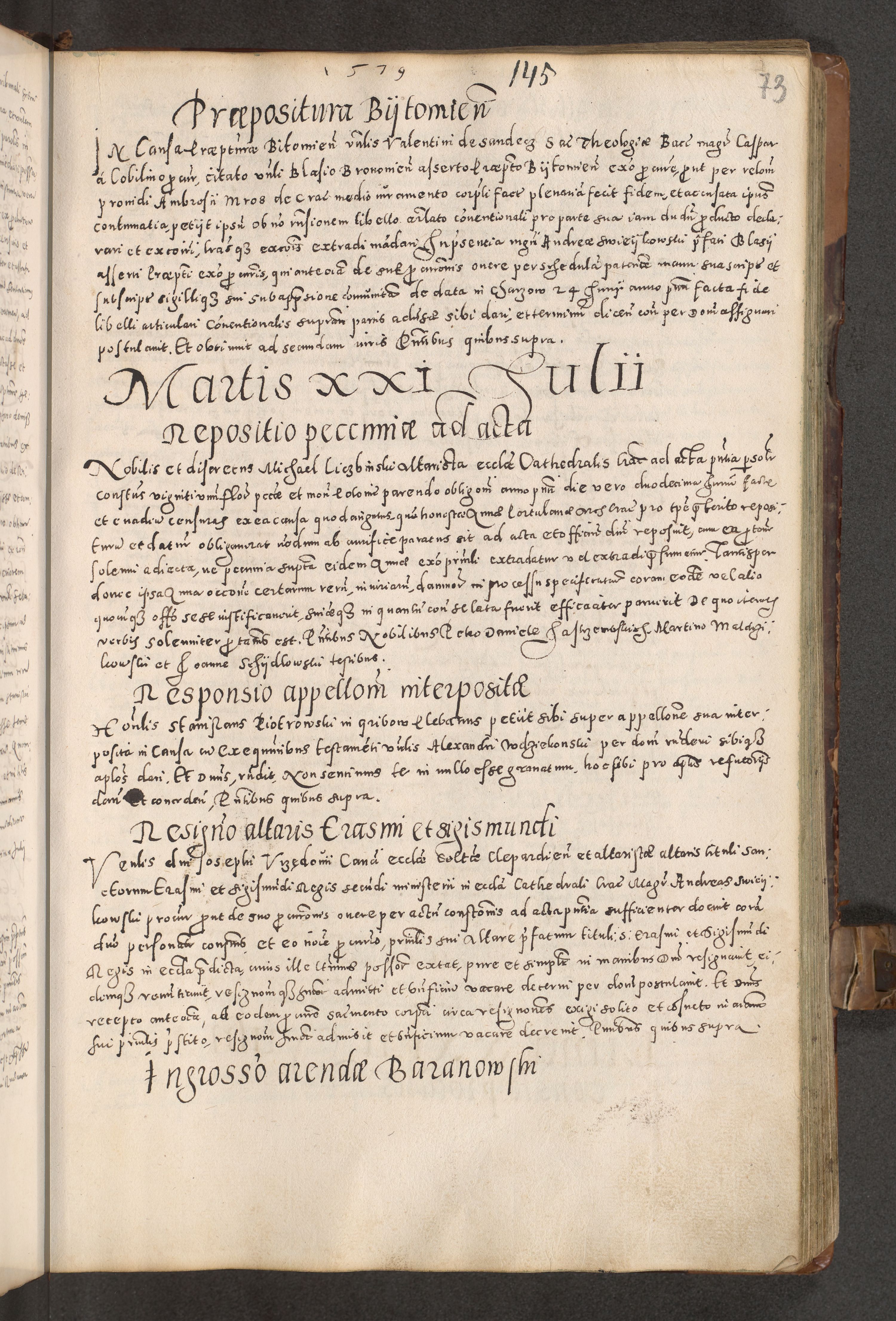 Acta actorum causarum tam diffinitivarum quam interloquutoriarum sententiarum decretorum obligationum quietatorum constuorum pro reverendum coram Reverendo Domino Alberto Nininski Custode Sandecensis Canonico et Archipresbitero Viccarioque in Spiritualibus ac Officiali Generali Cracoviensis ad Annum Domini Millesimum Qumgentesimum Septuagentesimum Nonum cuius Judictio septima Pontificat SS. nostri Domini Gregory pp. tredecimi Anno septimo inchoantur faliciter