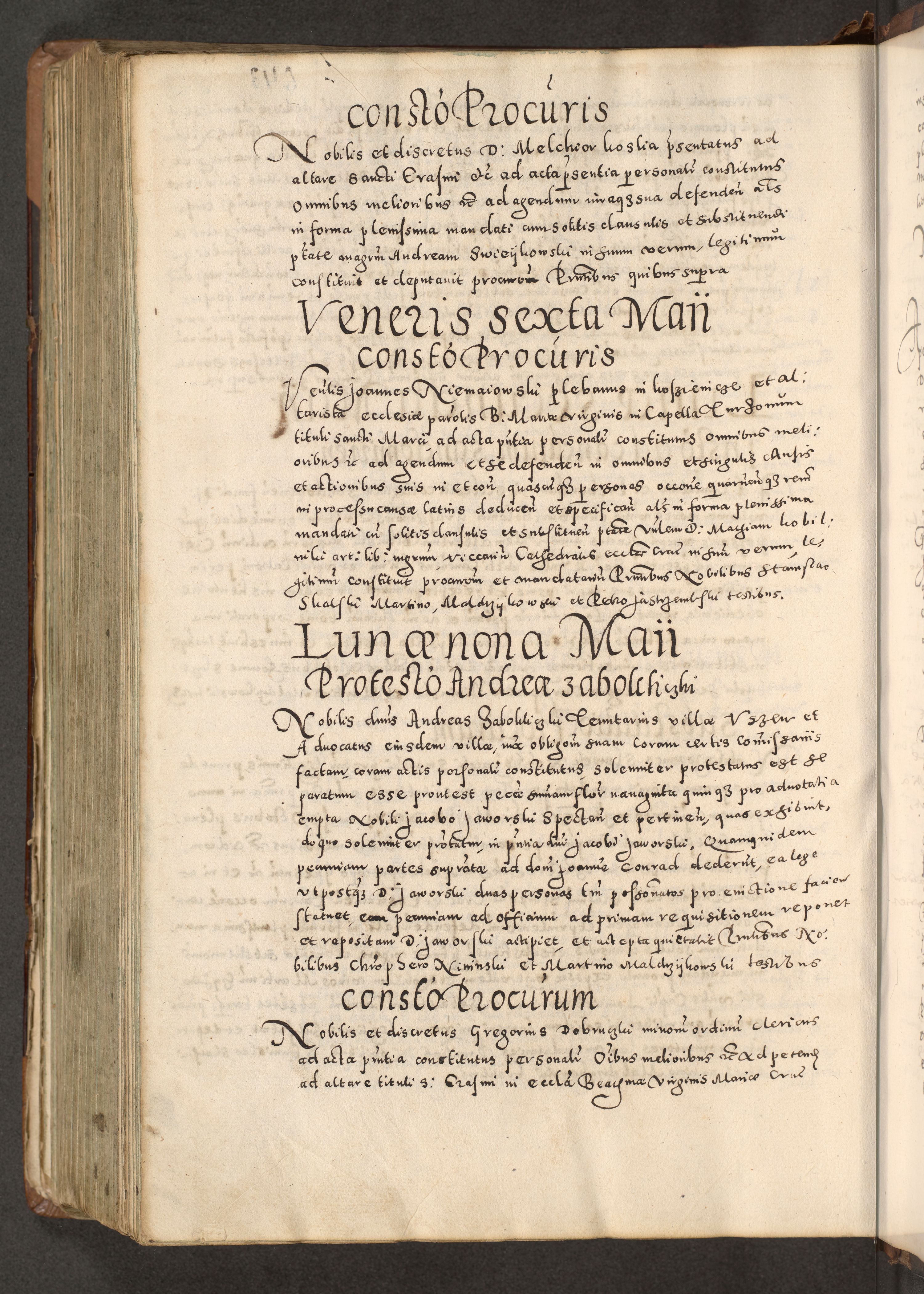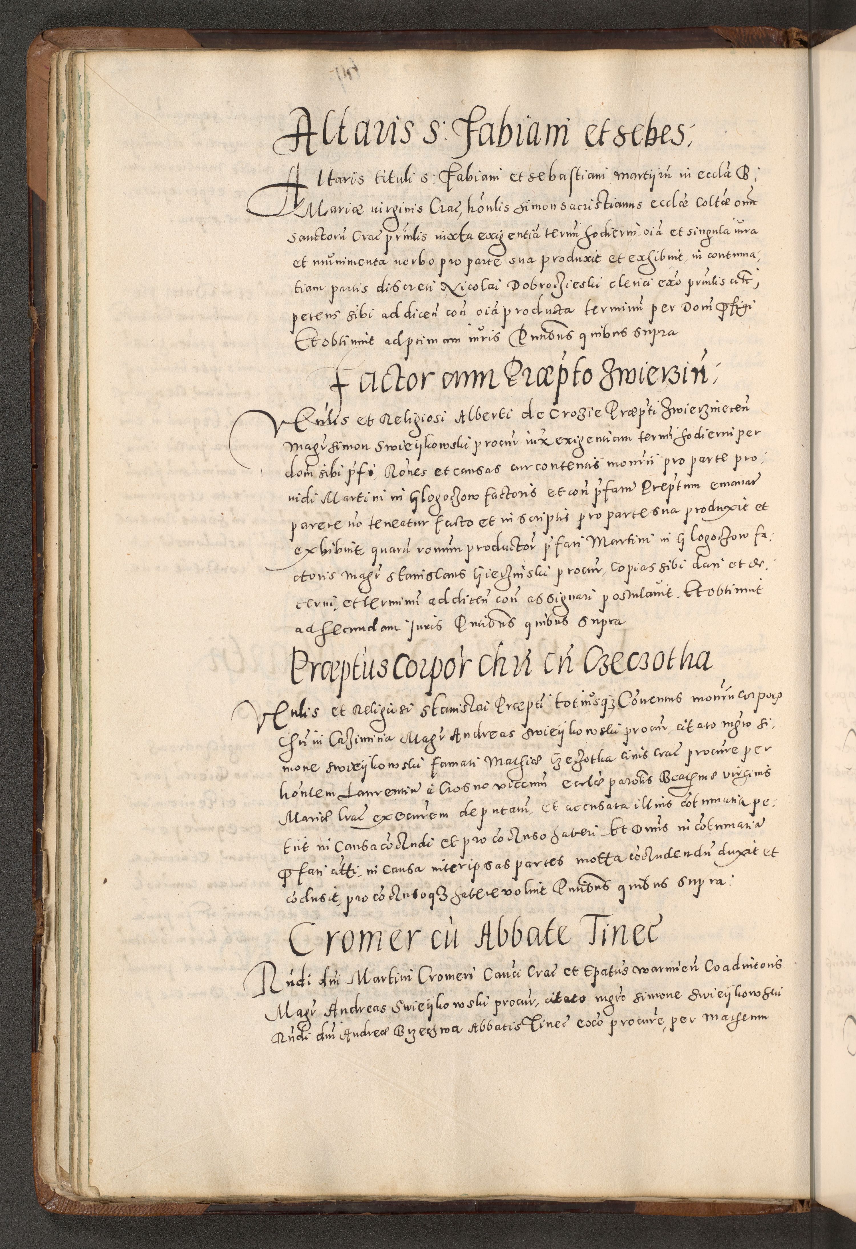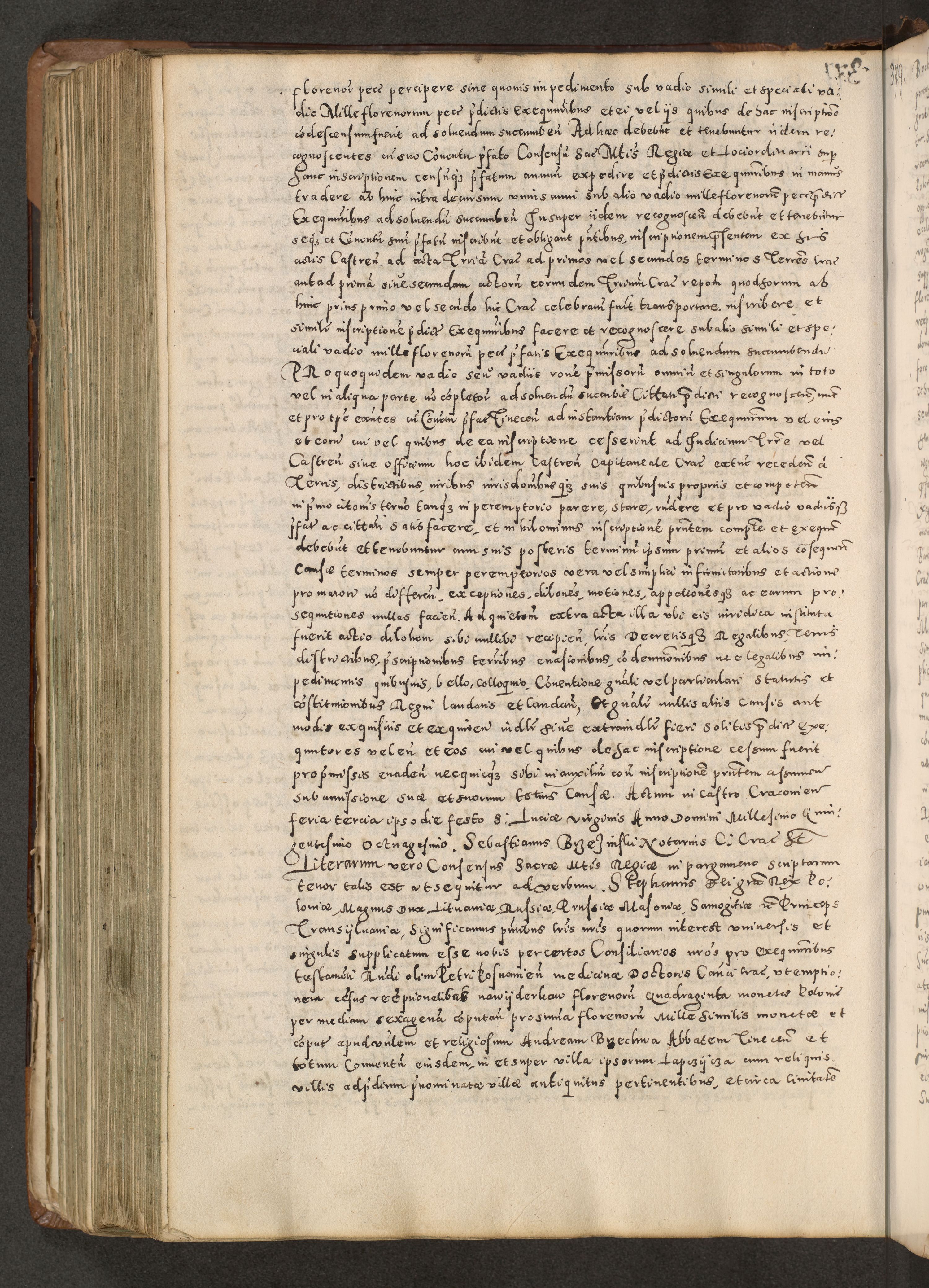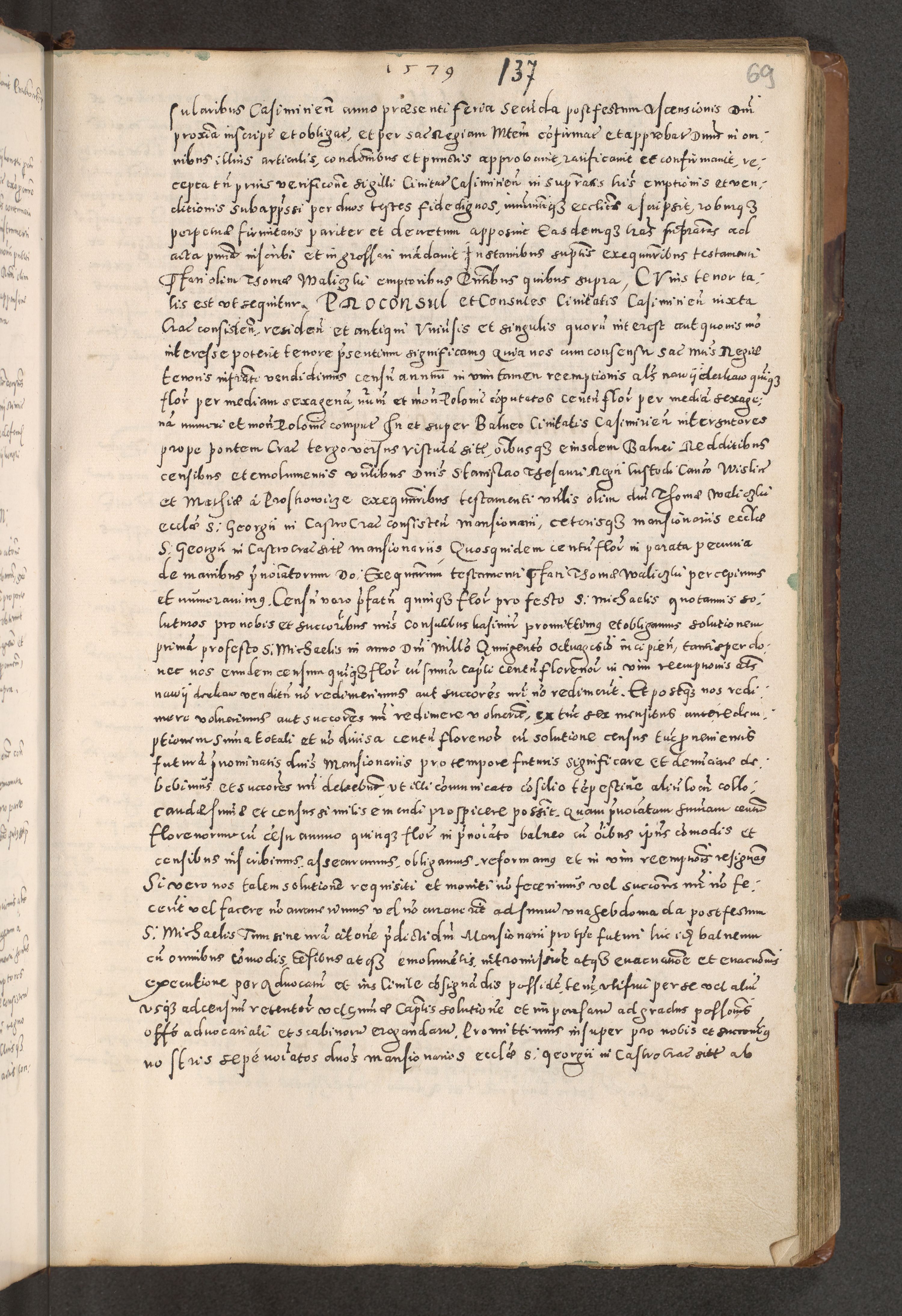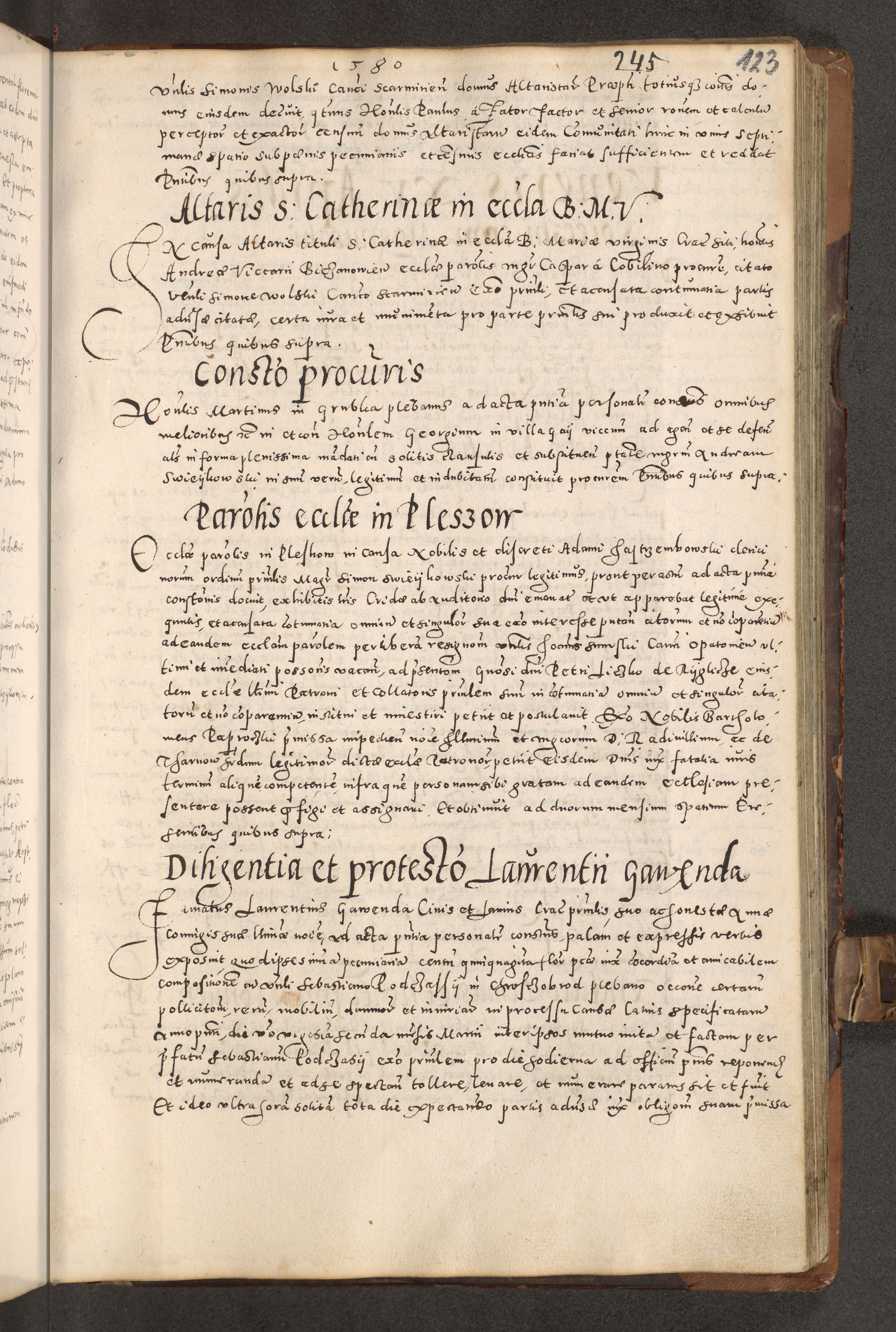 Acta actorum causarum tam diffinitivarum quam interloquutoriarum sententiarum decretorum obligationum quietatorum constuorum pro reverendum coram Reverendo Domino Alberto Nininski Custode Sandecensis Canonico et Archipresbitero Viccarioque in Spiritualibus ac Officiali Generali Cracoviensis ad Annum Domini Millesimum Qumgentesimum Septuagentesimum Nonum cuius Judictio septima Pontificat SS. nostri Domini Gregory pp. tredecimi Anno septimo inchoantur faliciter