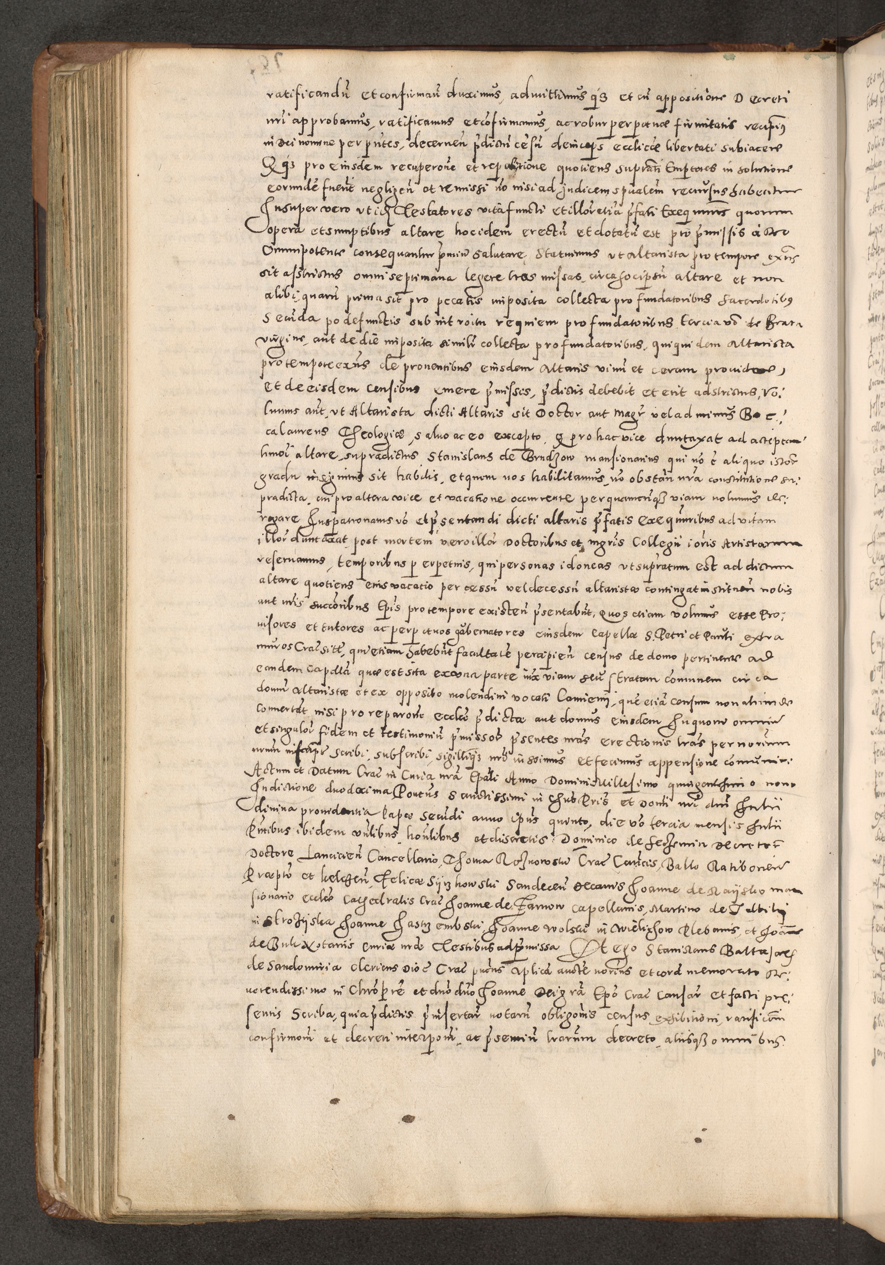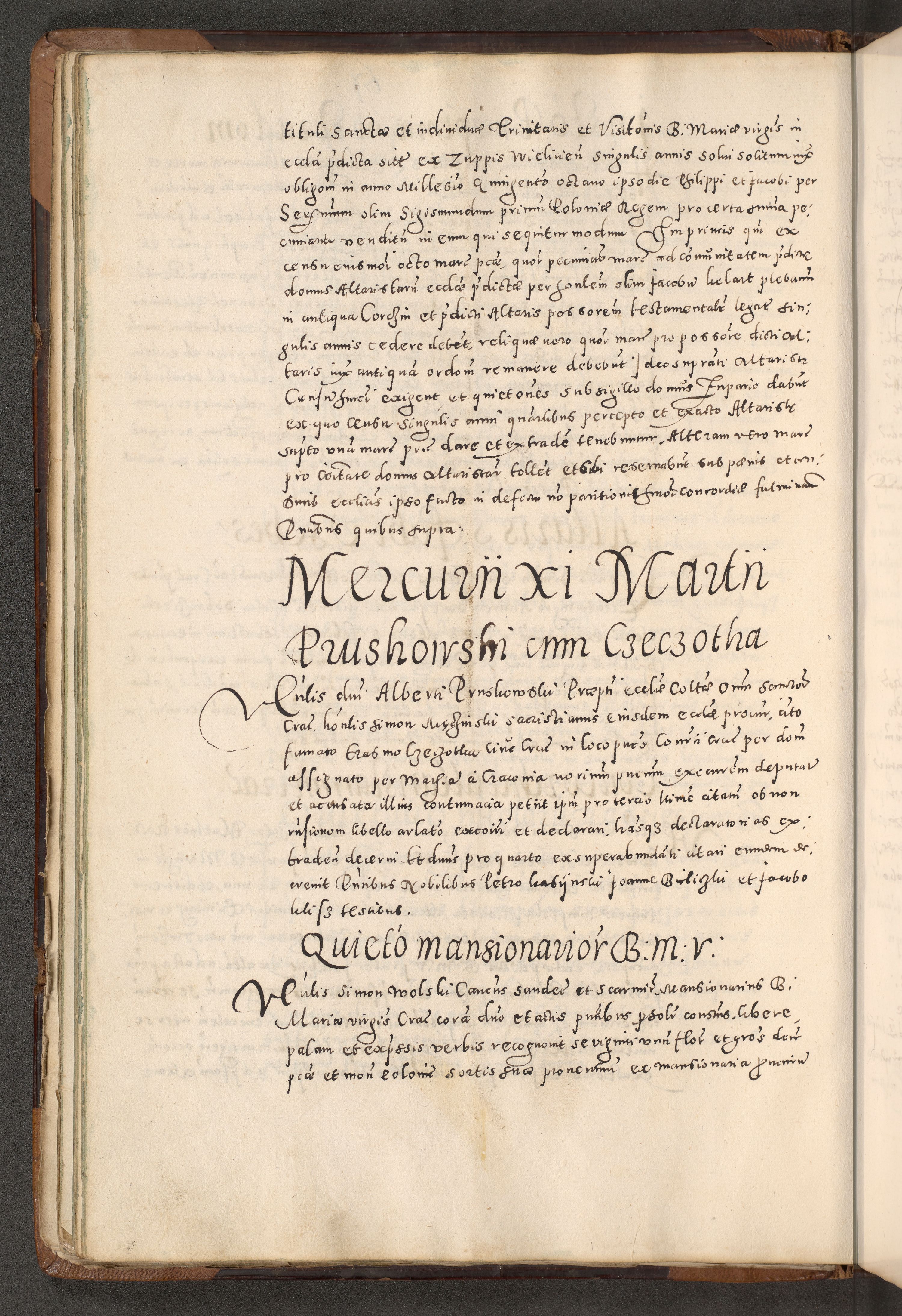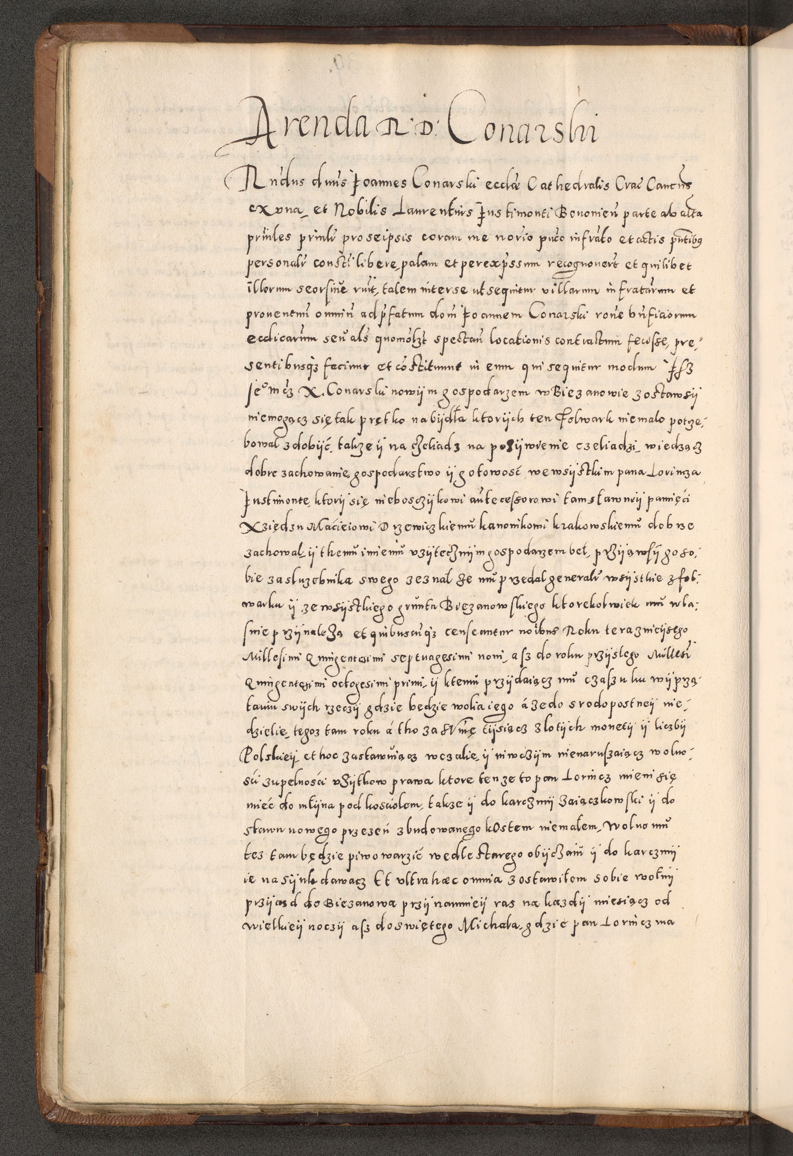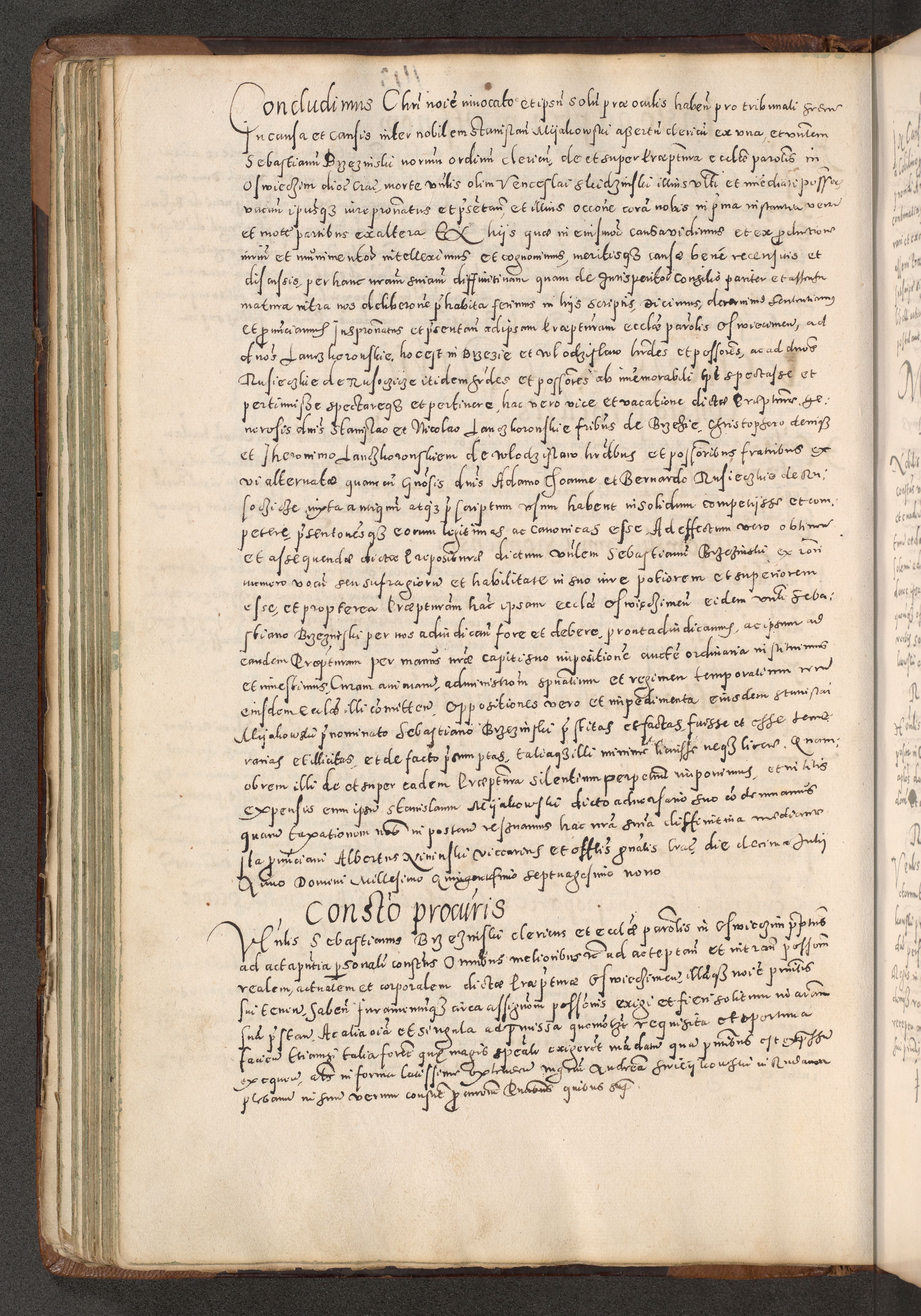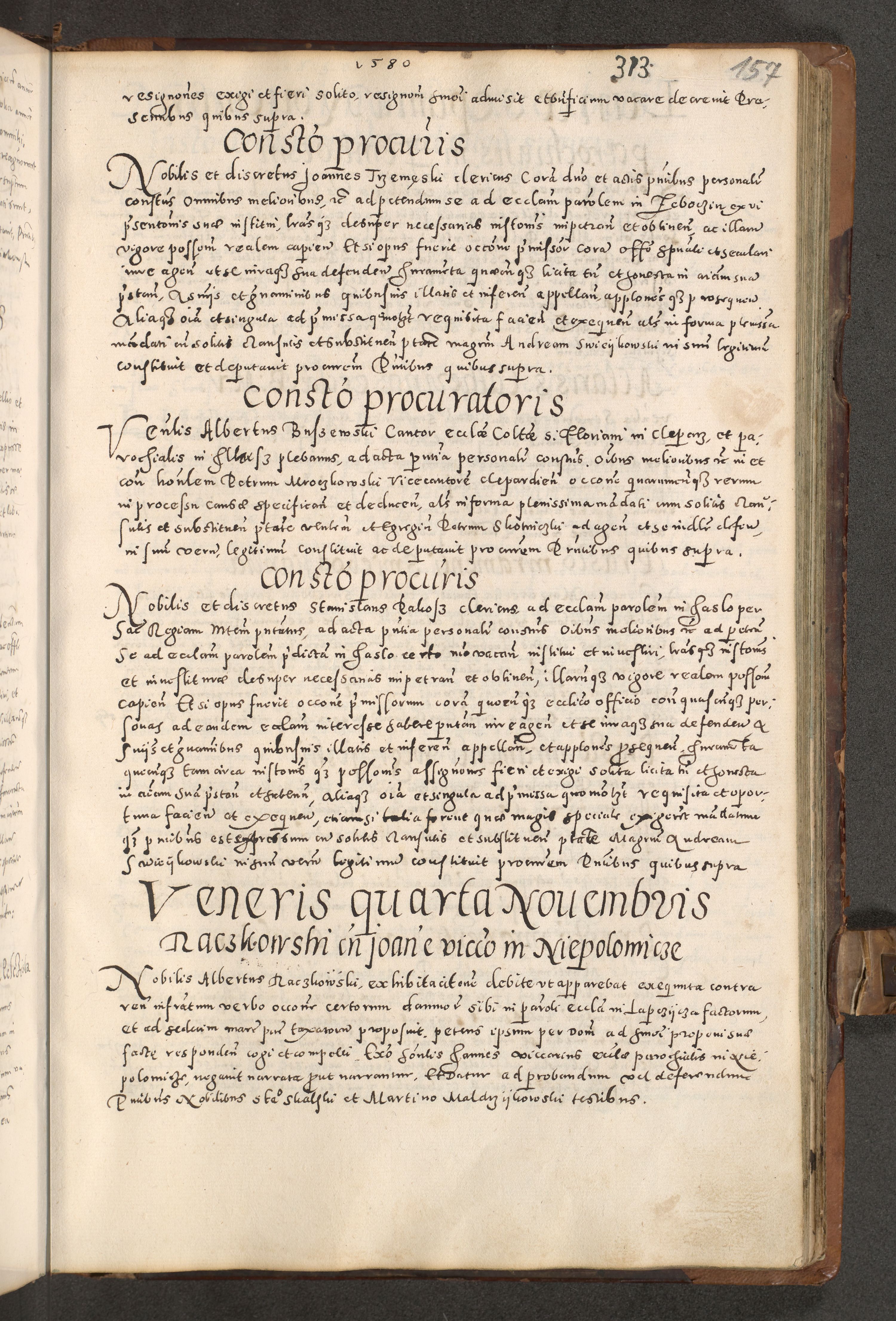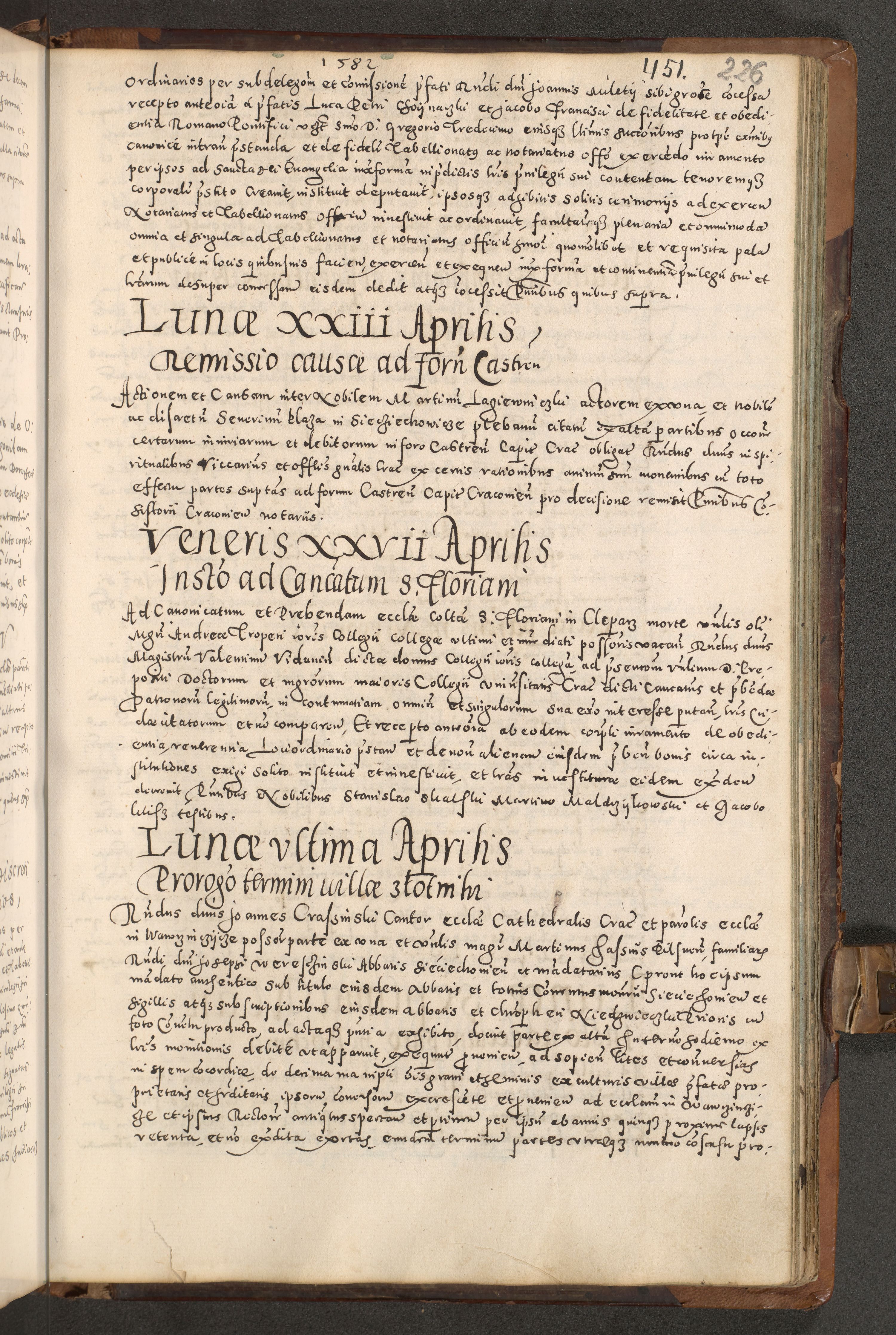 Acta actorum causarum tam diffinitivarum quam interloquutoriarum sententiarum decretorum obligationum quietatorum constuorum pro reverendum coram Reverendo Domino Alberto Nininski Custode Sandecensis Canonico et Archipresbitero Viccarioque in Spiritualibus ac Officiali Generali Cracoviensis ad Annum Domini Millesimum Qumgentesimum Septuagentesimum Nonum cuius Judictio septima Pontificat SS. nostri Domini Gregory pp. tredecimi Anno septimo inchoantur faliciter