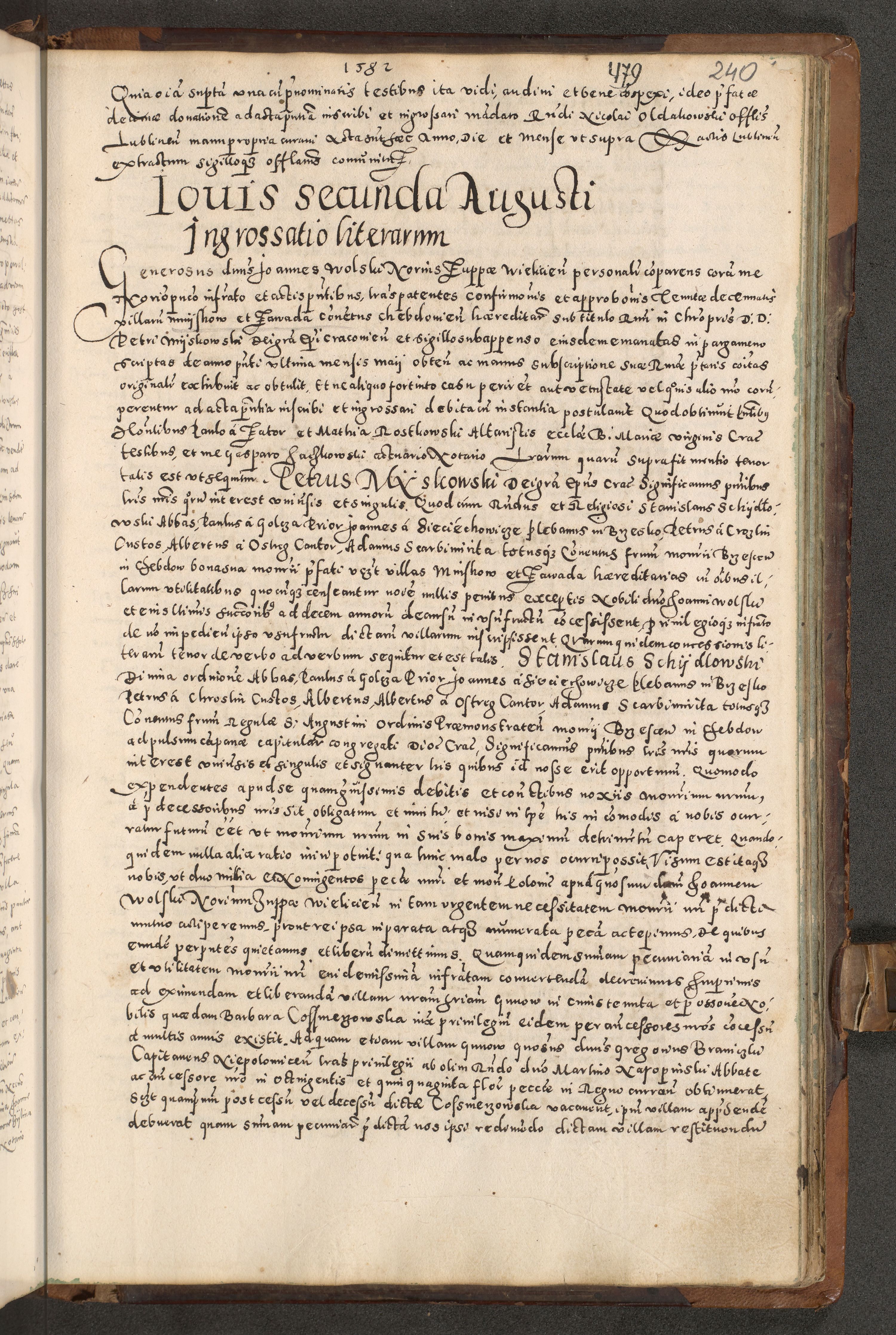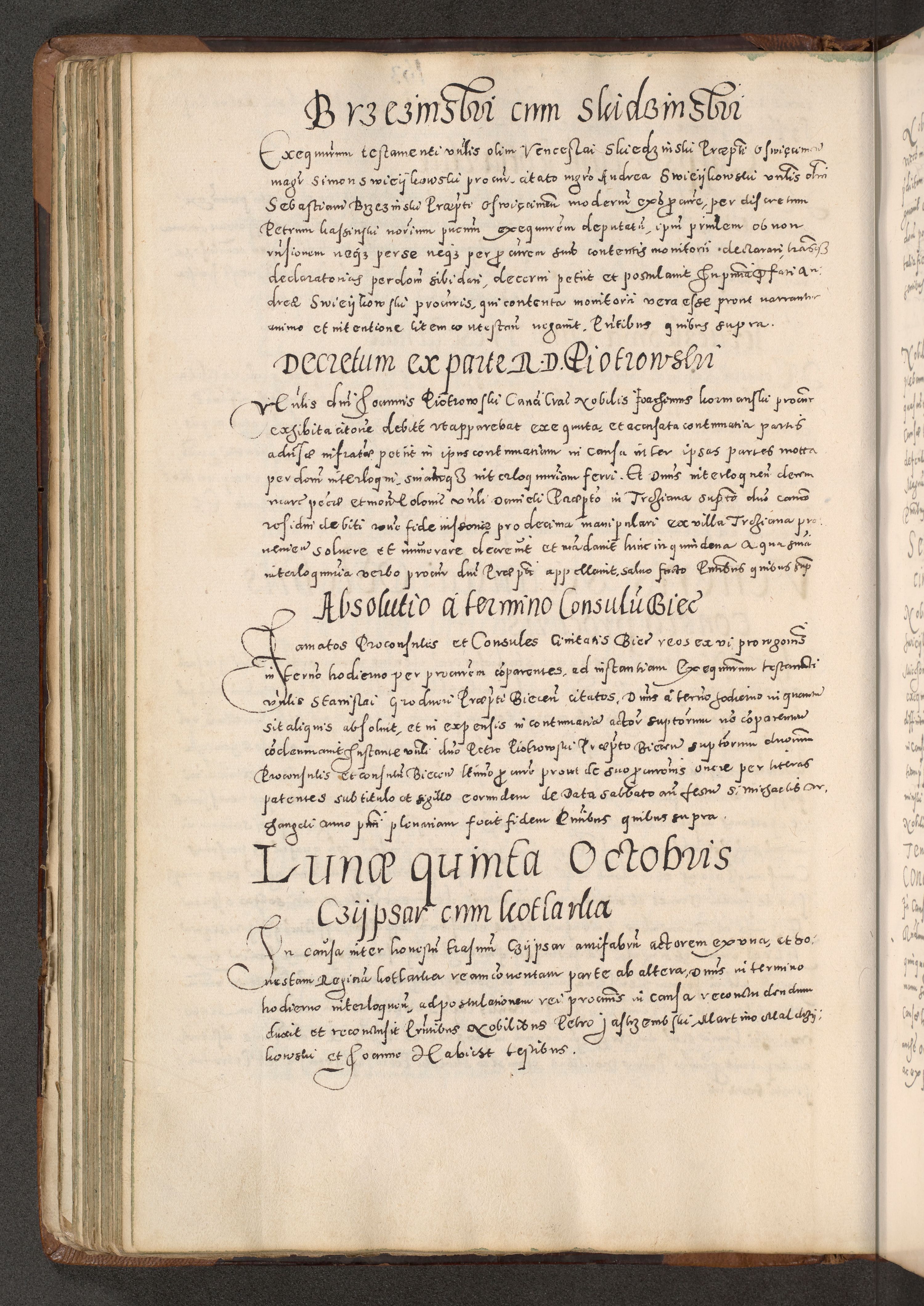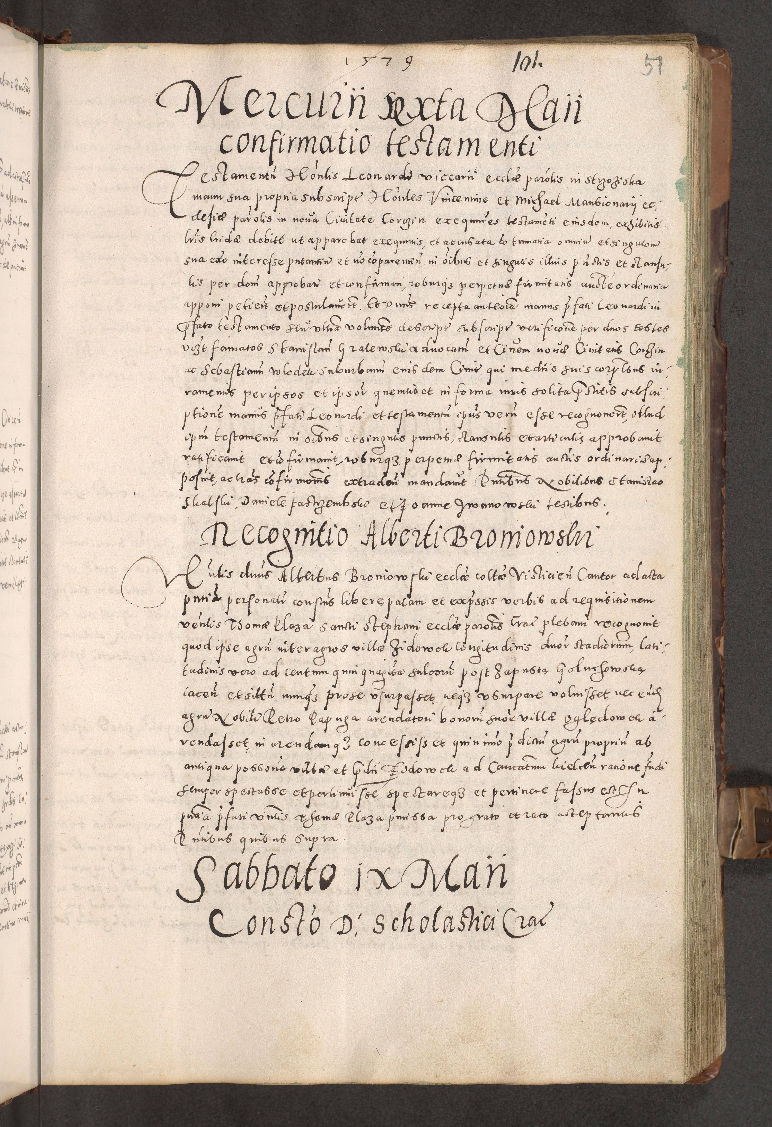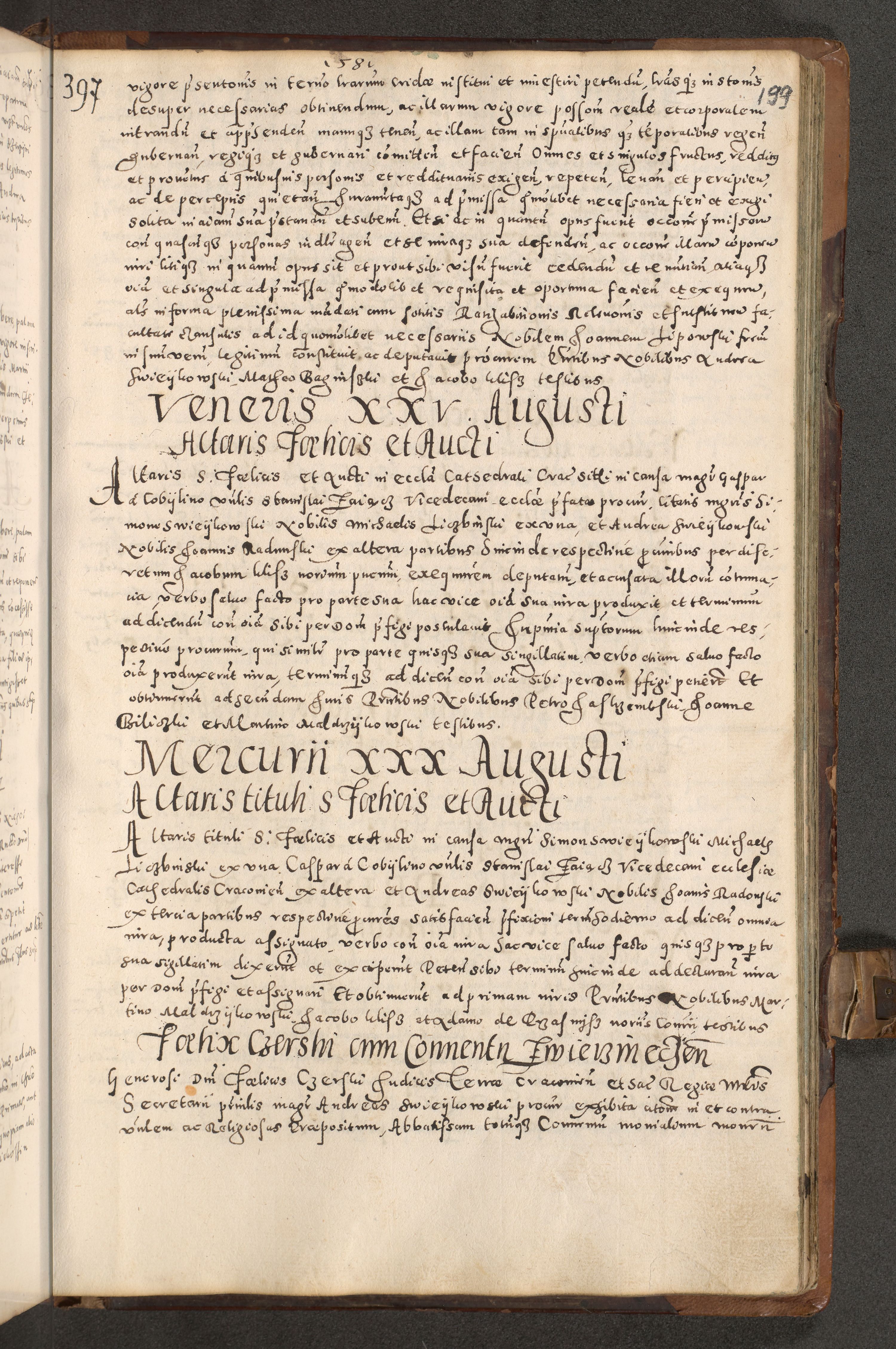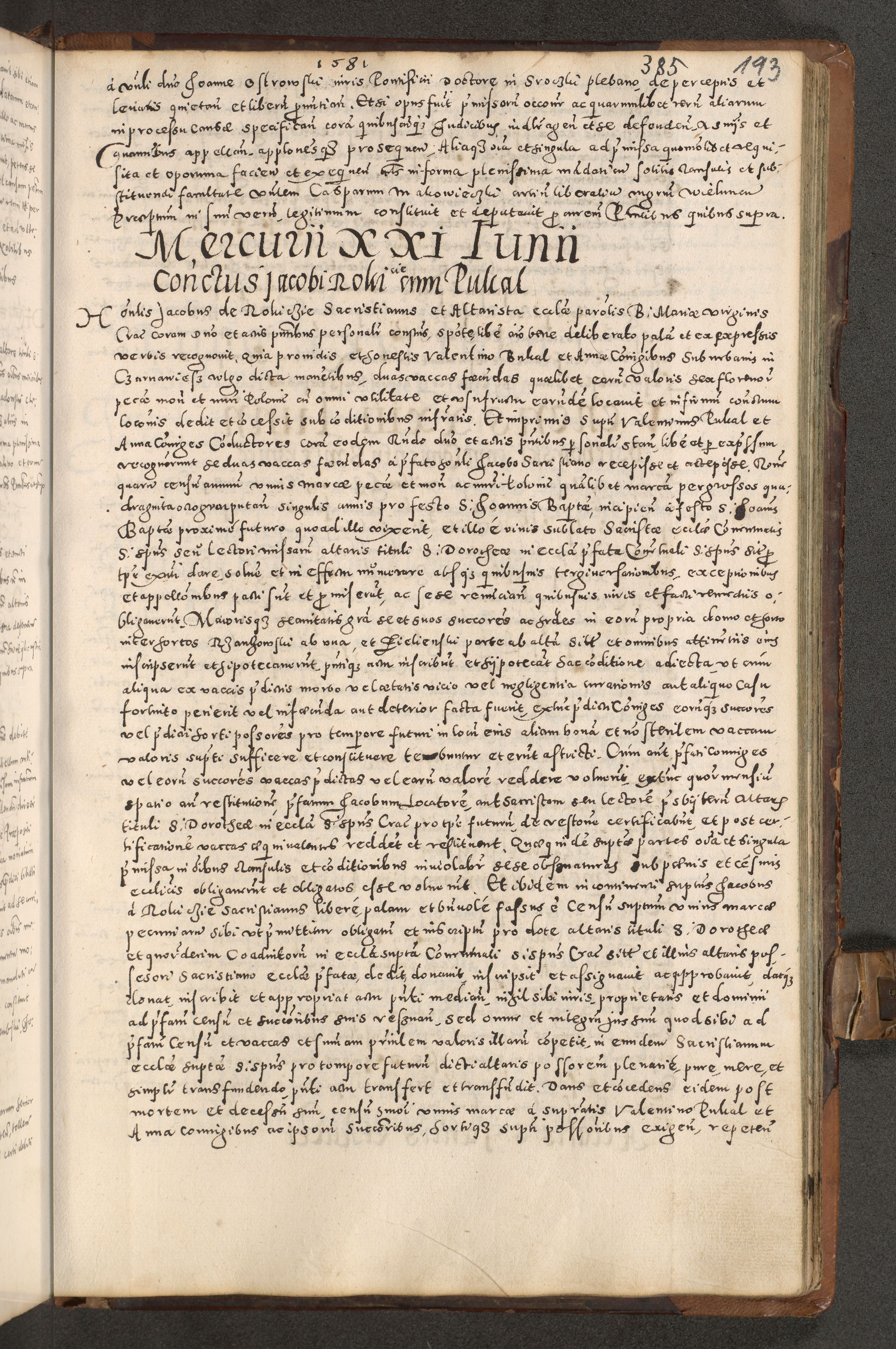 Acta actorum causarum tam diffinitivarum quam interloquutoriarum sententiarum decretorum obligationum quietatorum constuorum pro reverendum coram Reverendo Domino Alberto Nininski Custode Sandecensis Canonico et Archipresbitero Viccarioque in Spiritualibus ac Officiali Generali Cracoviensis ad Annum Domini Millesimum Qumgentesimum Septuagentesimum Nonum cuius Judictio septima Pontificat SS. nostri Domini Gregory pp. tredecimi Anno septimo inchoantur faliciter