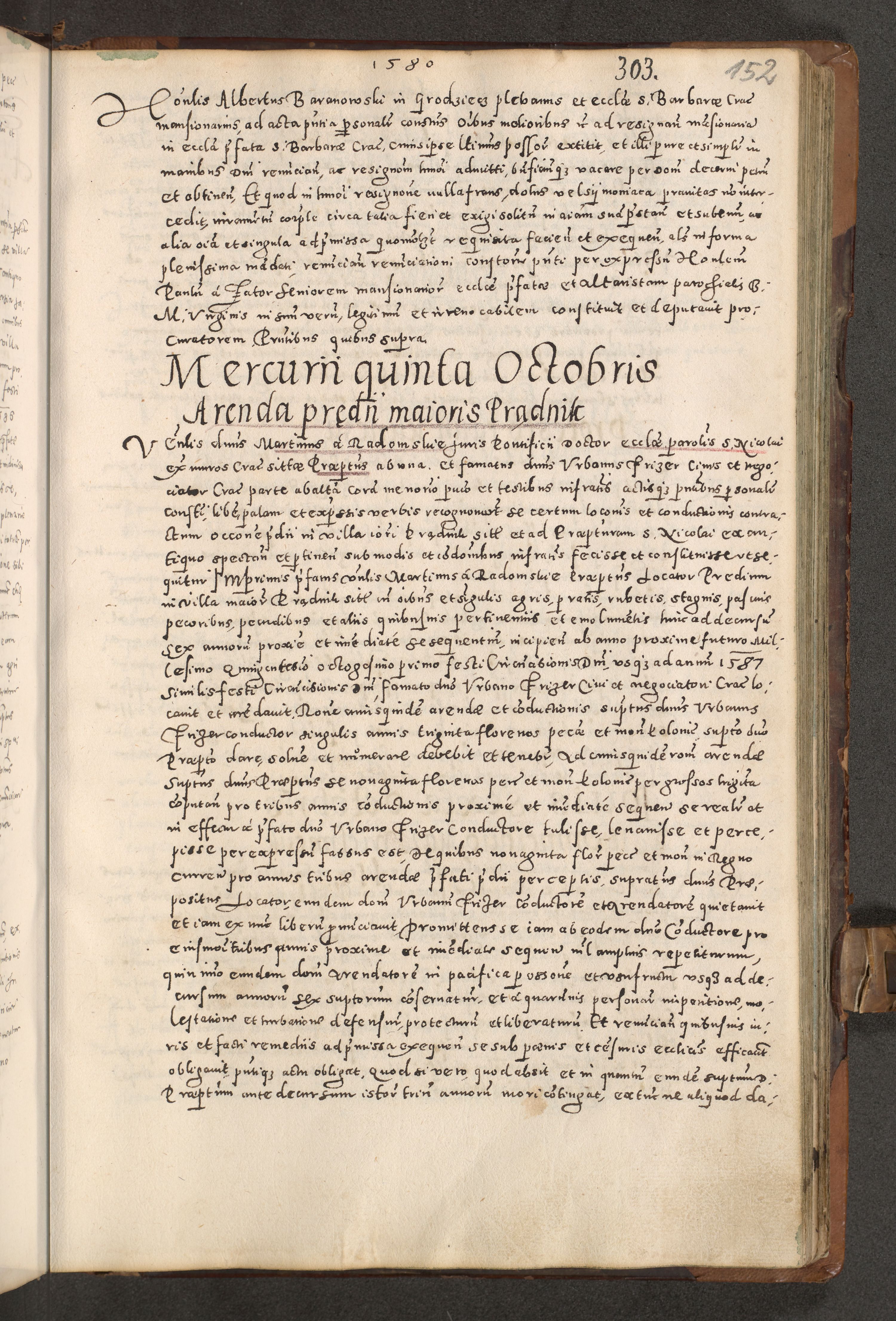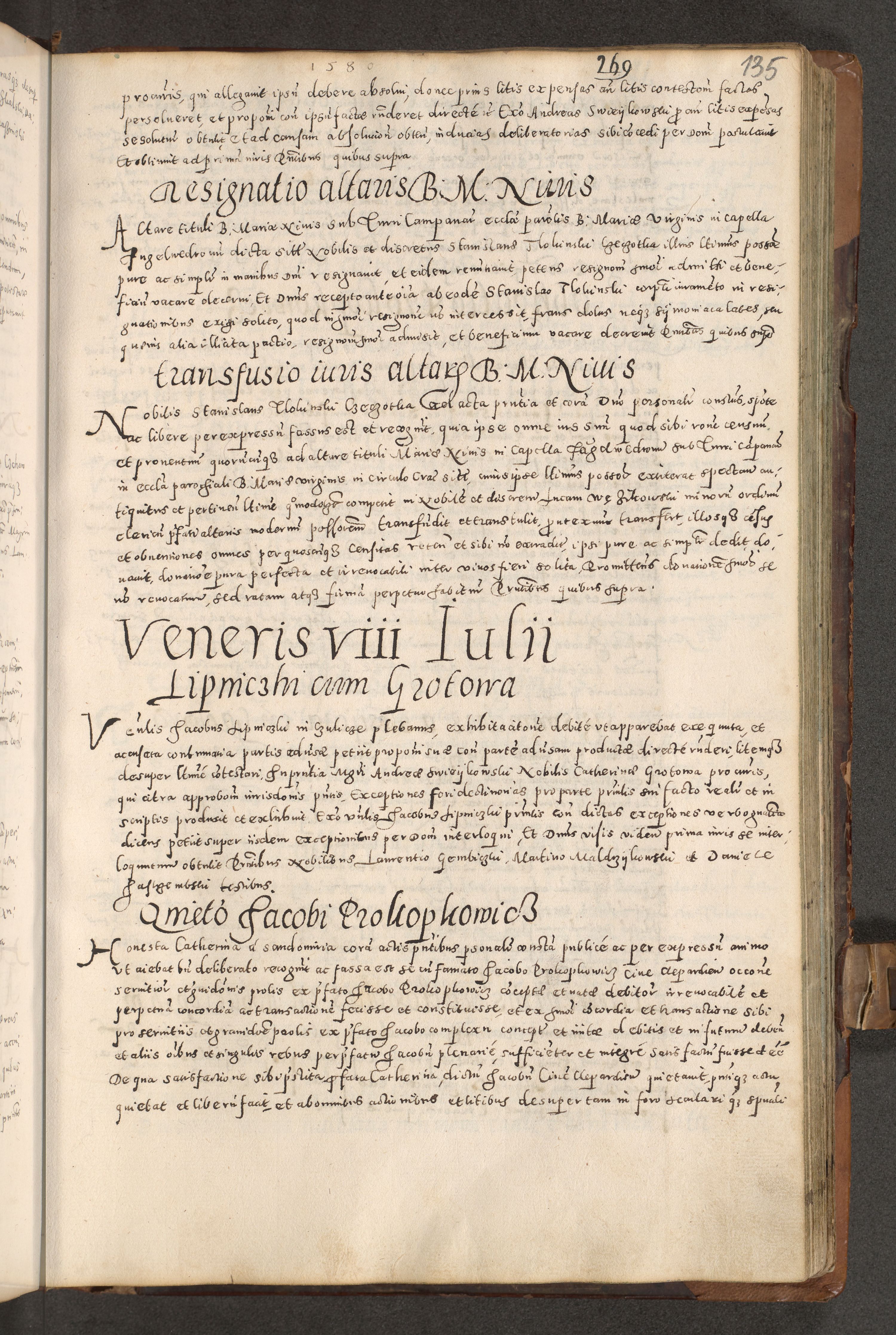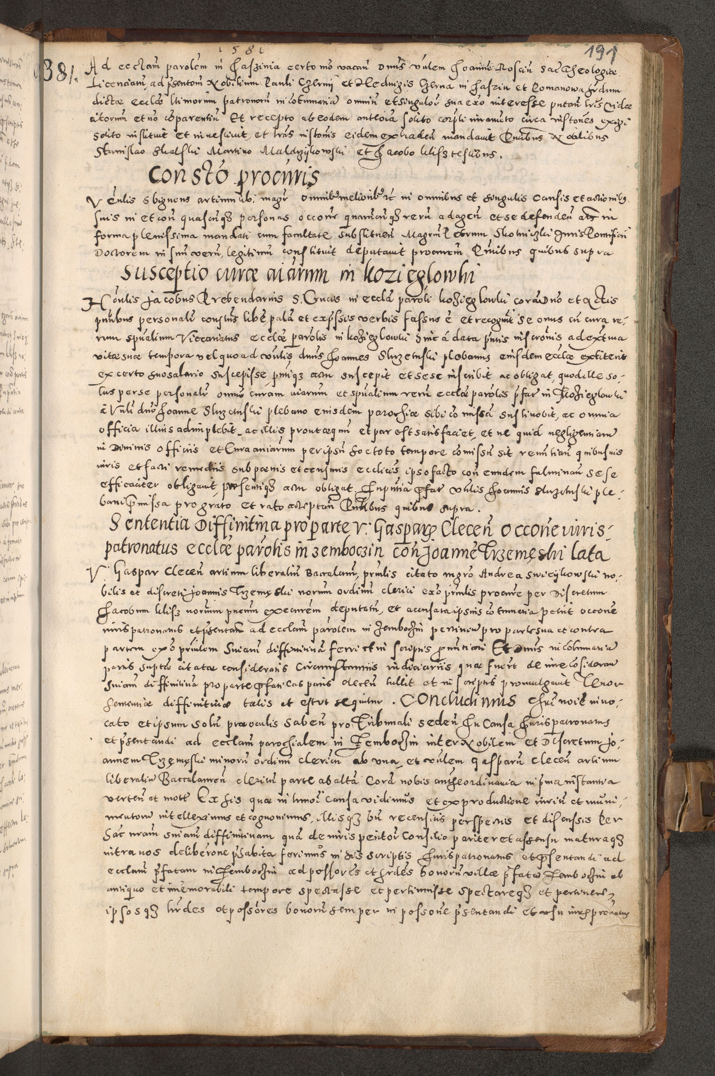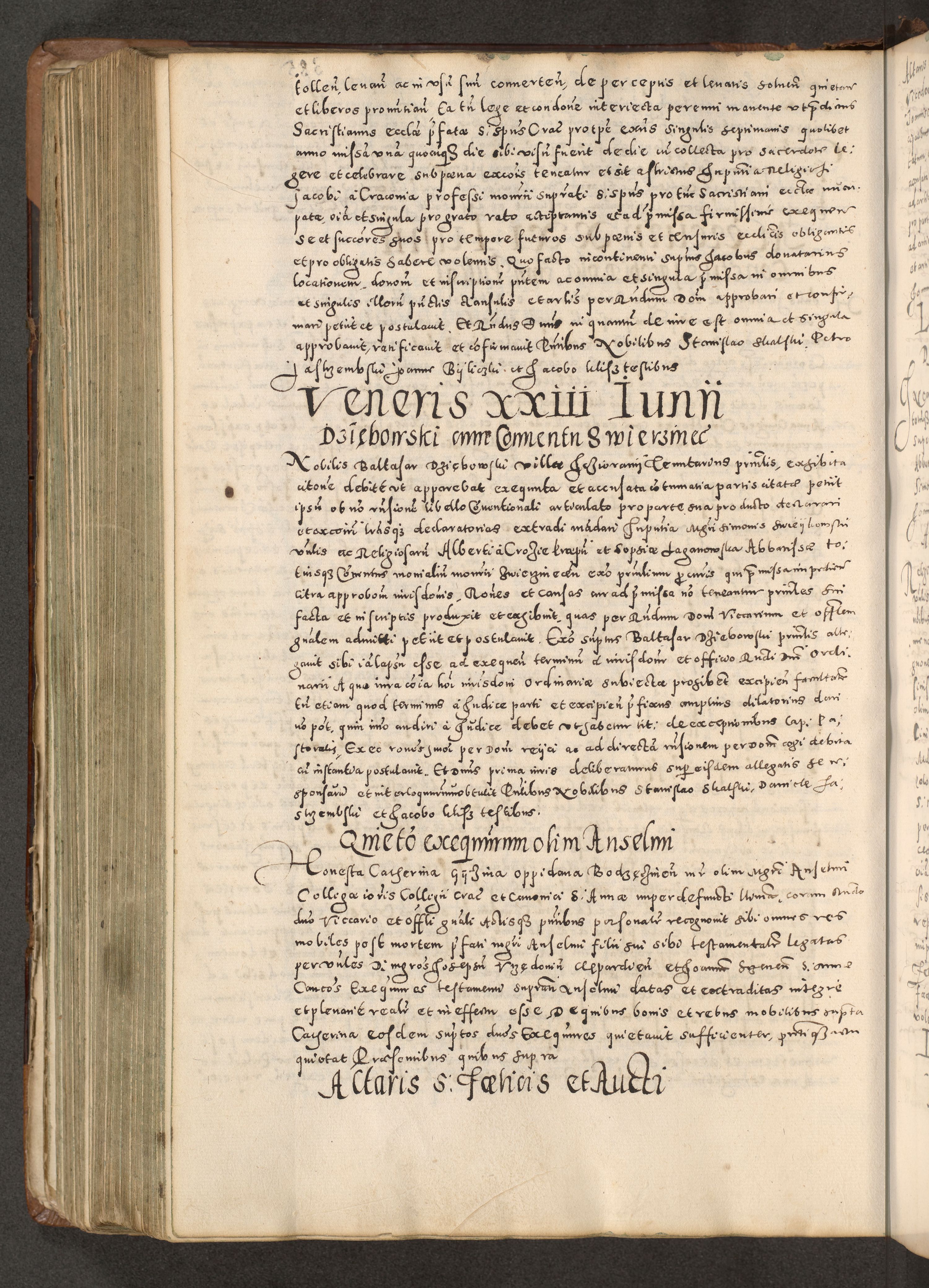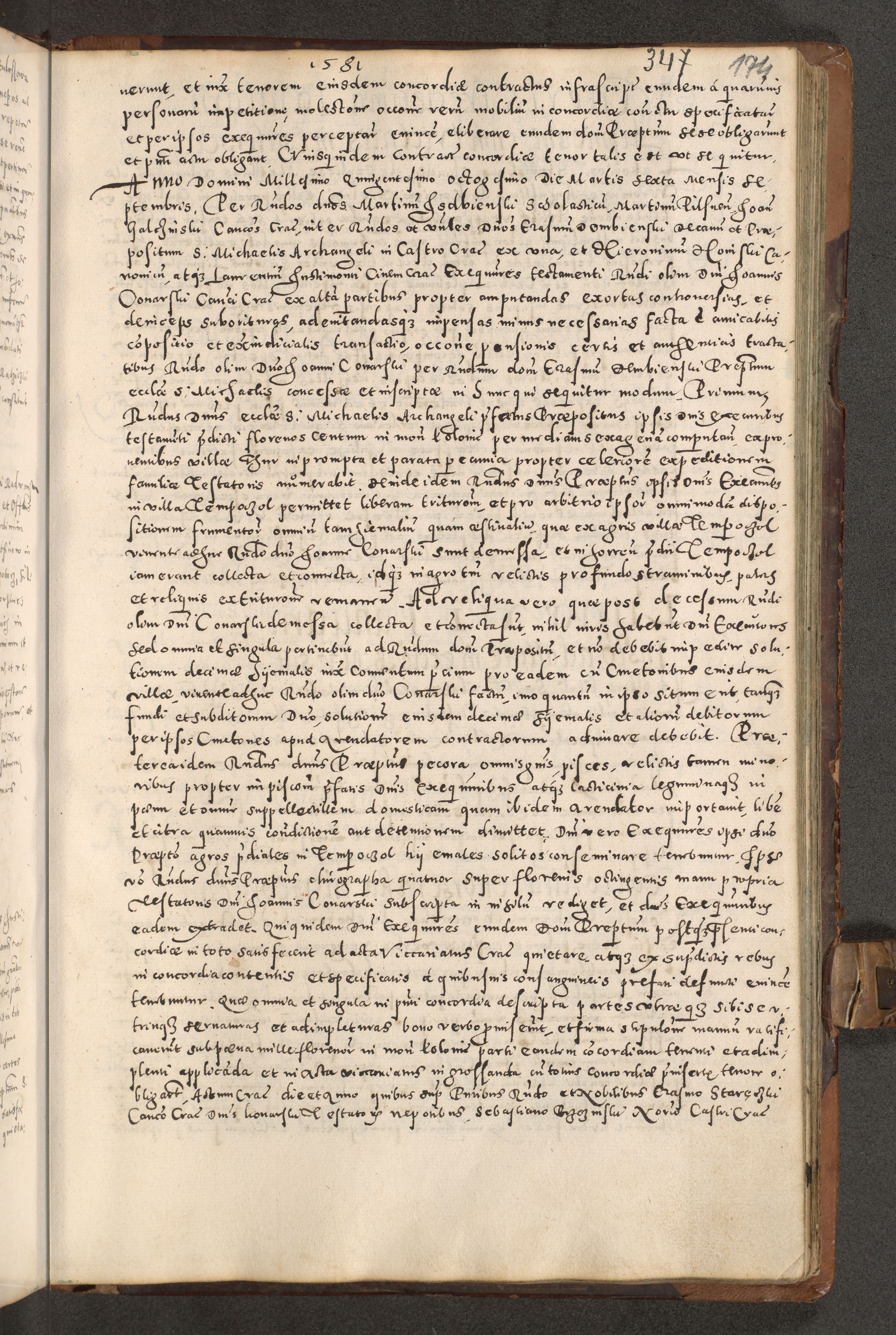 Acta actorum causarum tam diffinitivarum quam interloquutoriarum sententiarum decretorum obligationum quietatorum constuorum pro reverendum coram Reverendo Domino Alberto Nininski Custode Sandecensis Canonico et Archipresbitero Viccarioque in Spiritualibus ac Officiali Generali Cracoviensis ad Annum Domini Millesimum Qumgentesimum Septuagentesimum Nonum cuius Judictio septima Pontificat SS. nostri Domini Gregory pp. tredecimi Anno septimo inchoantur faliciter