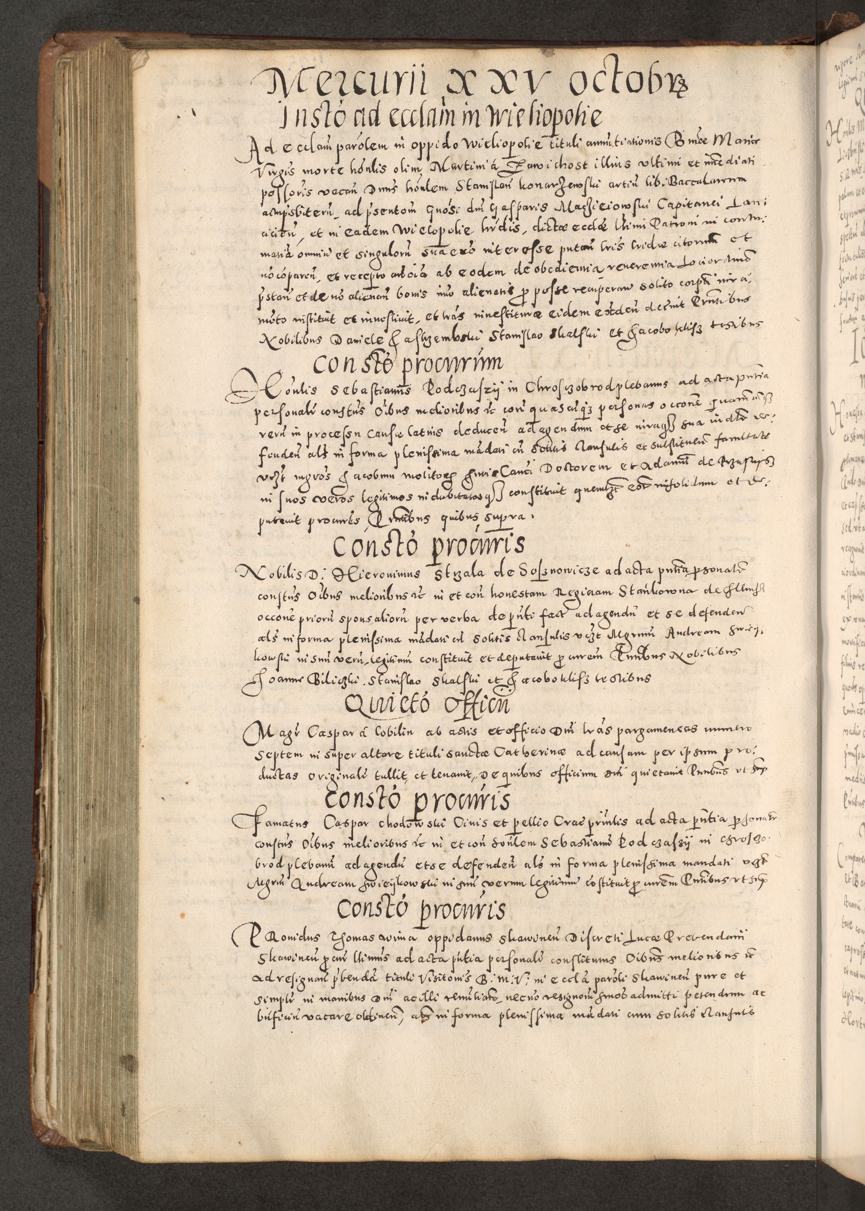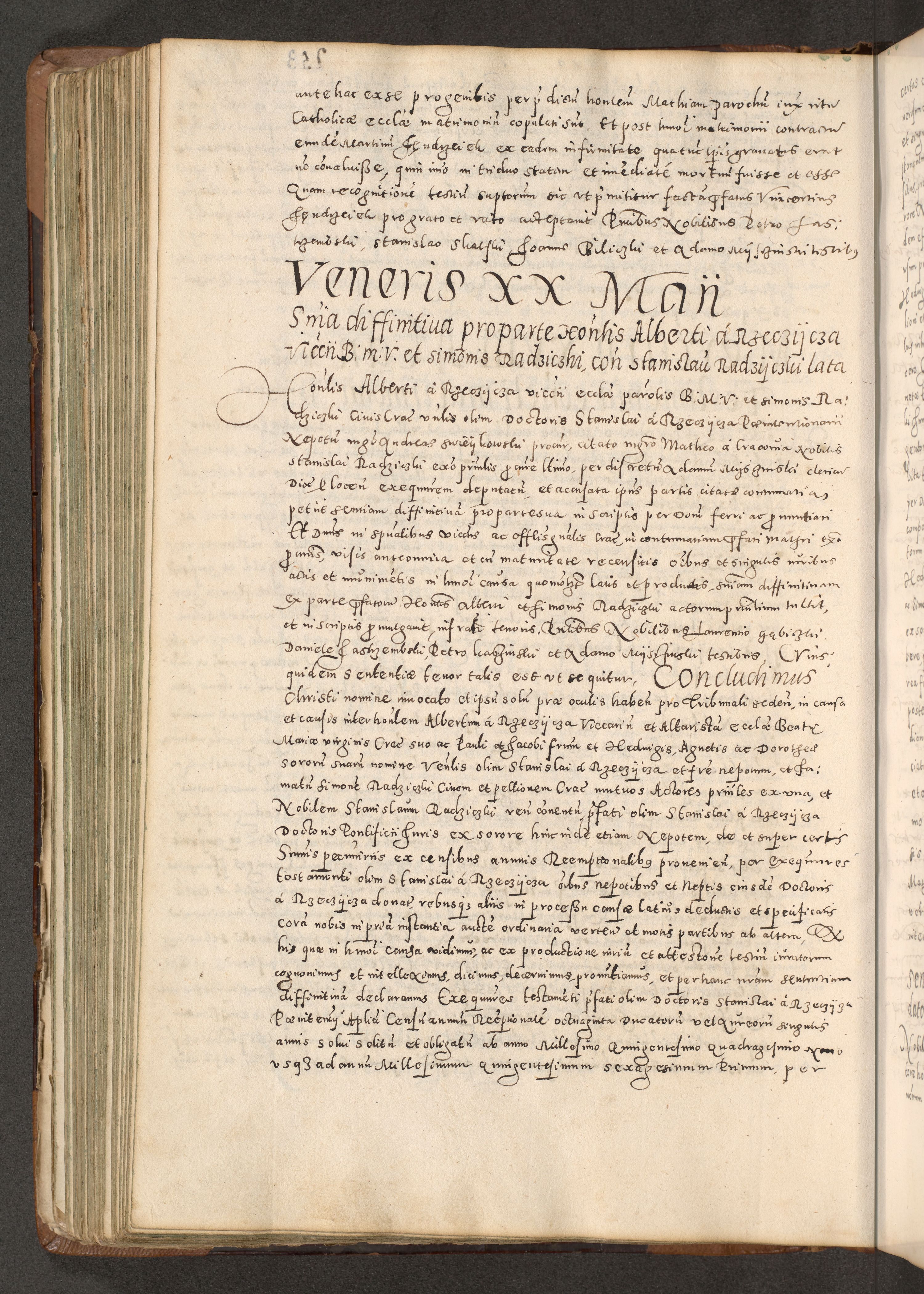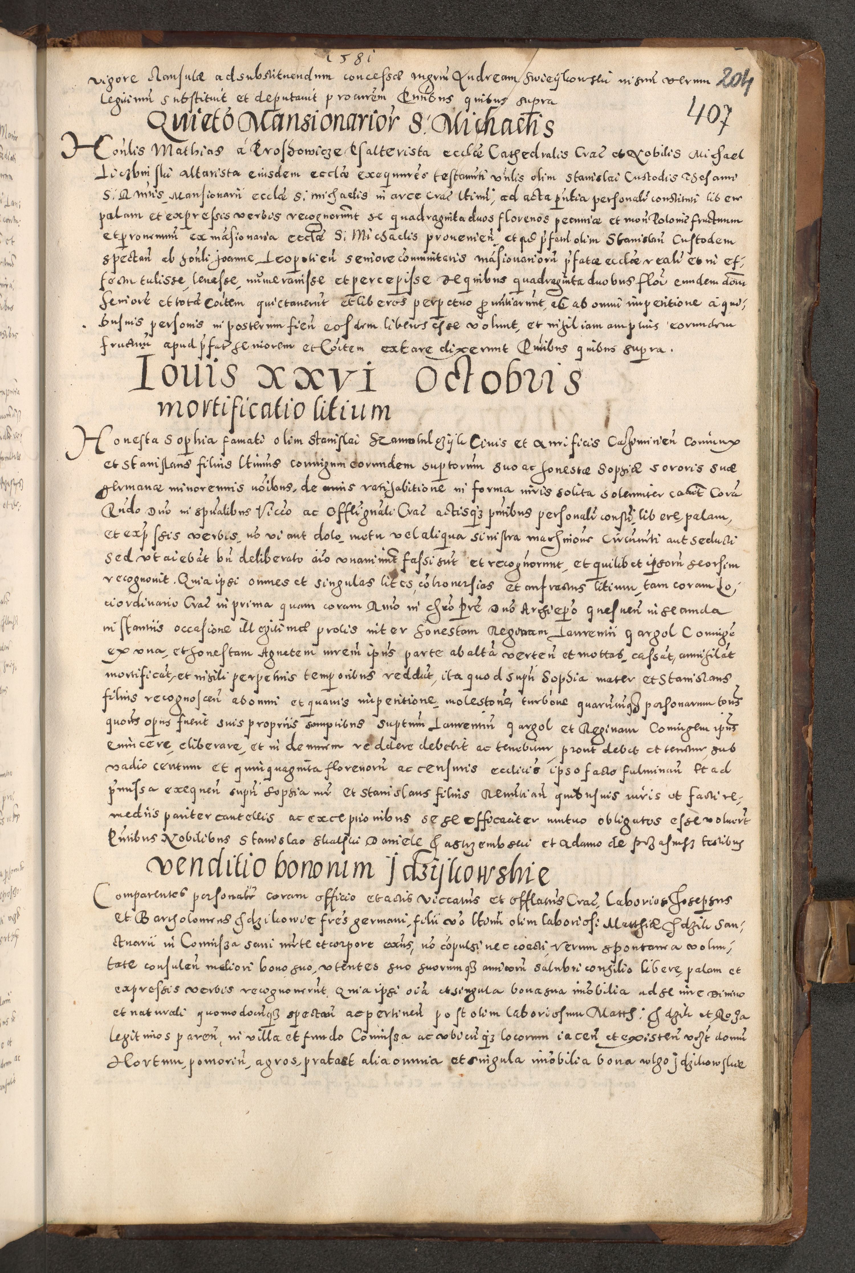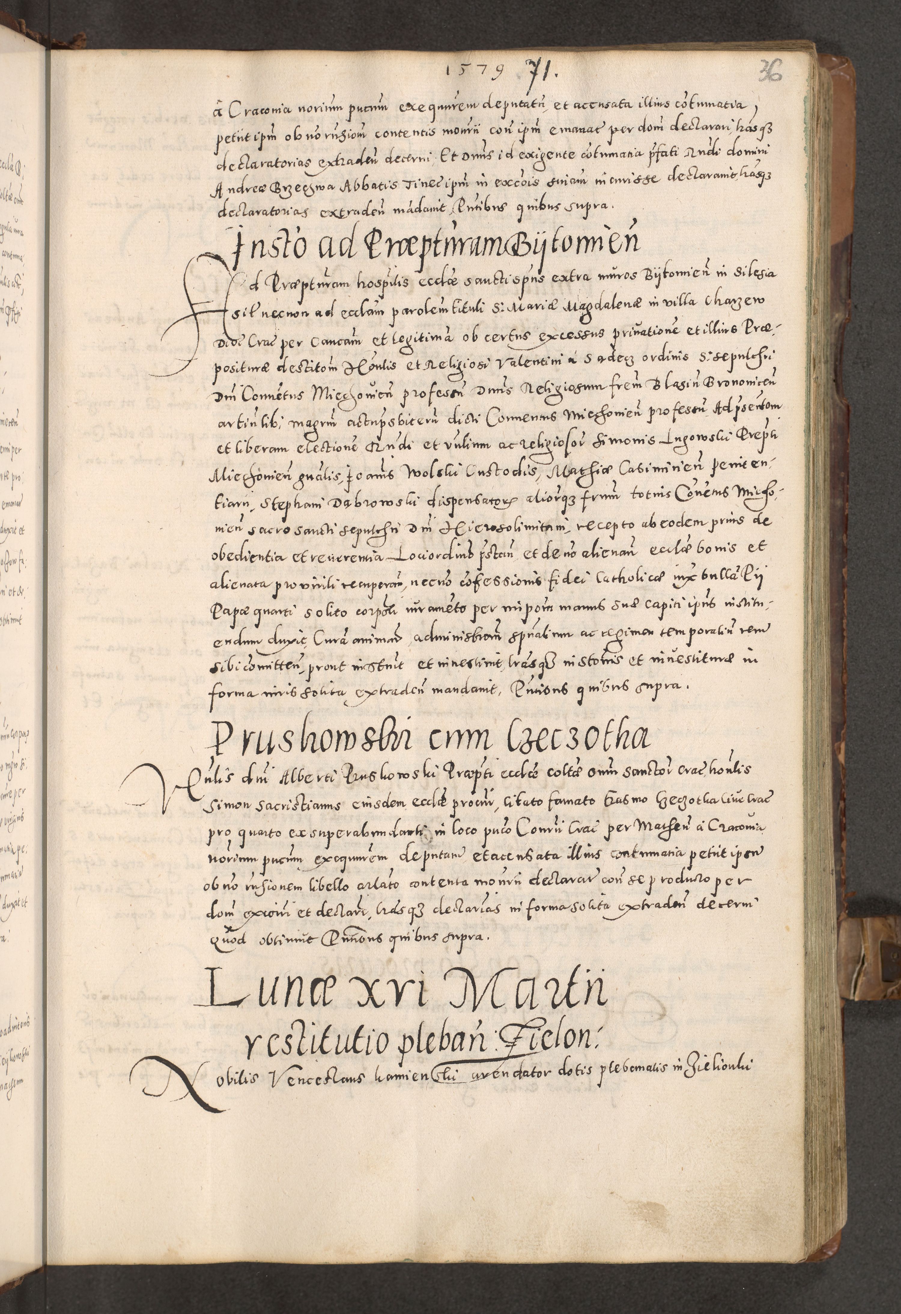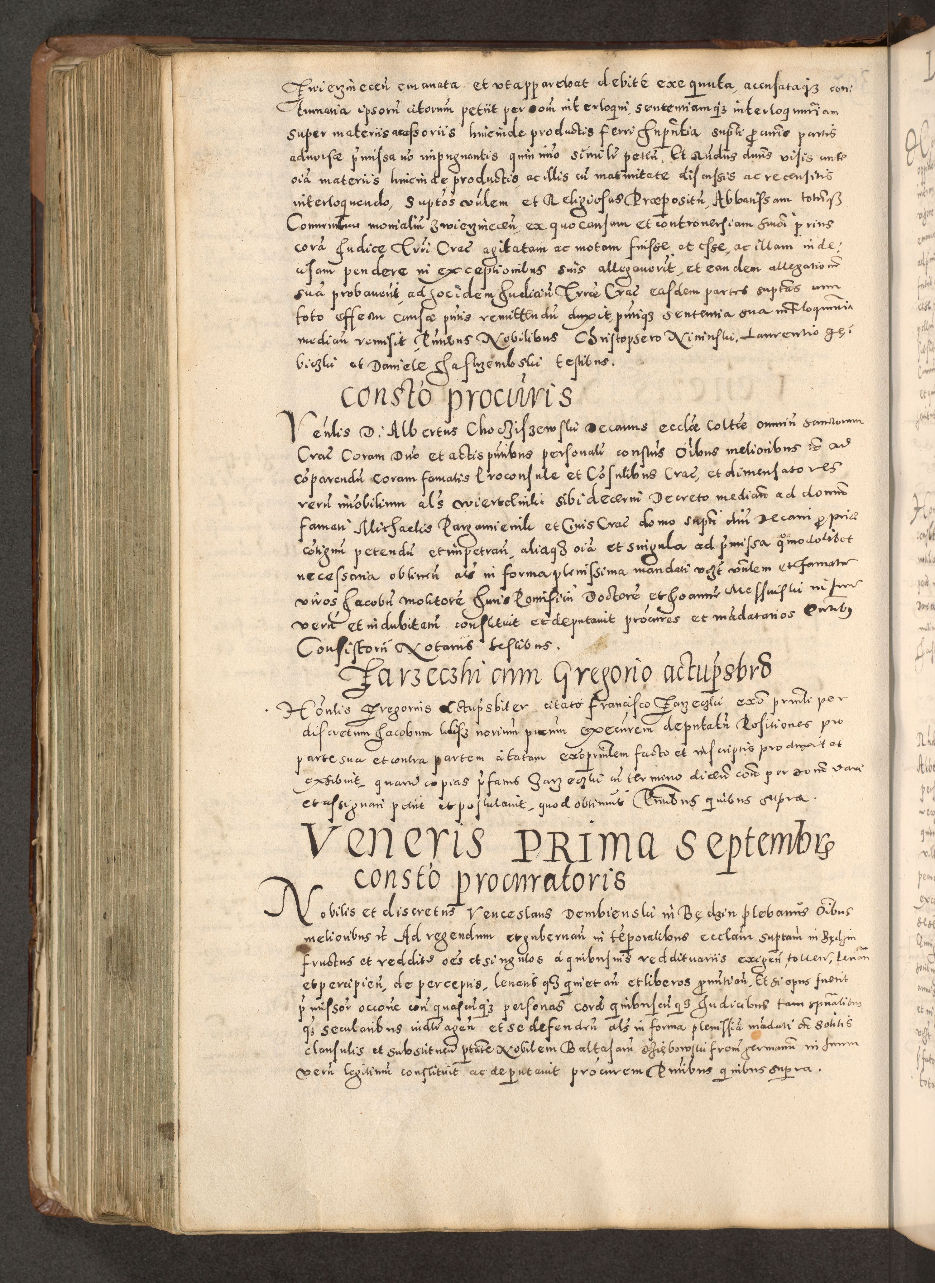 Acta actorum causarum tam diffinitivarum quam interloquutoriarum sententiarum decretorum obligationum quietatorum constuorum pro reverendum coram Reverendo Domino Alberto Nininski Custode Sandecensis Canonico et Archipresbitero Viccarioque in Spiritualibus ac Officiali Generali Cracoviensis ad Annum Domini Millesimum Qumgentesimum Septuagentesimum Nonum cuius Judictio septima Pontificat SS. nostri Domini Gregory pp. tredecimi Anno septimo inchoantur faliciter