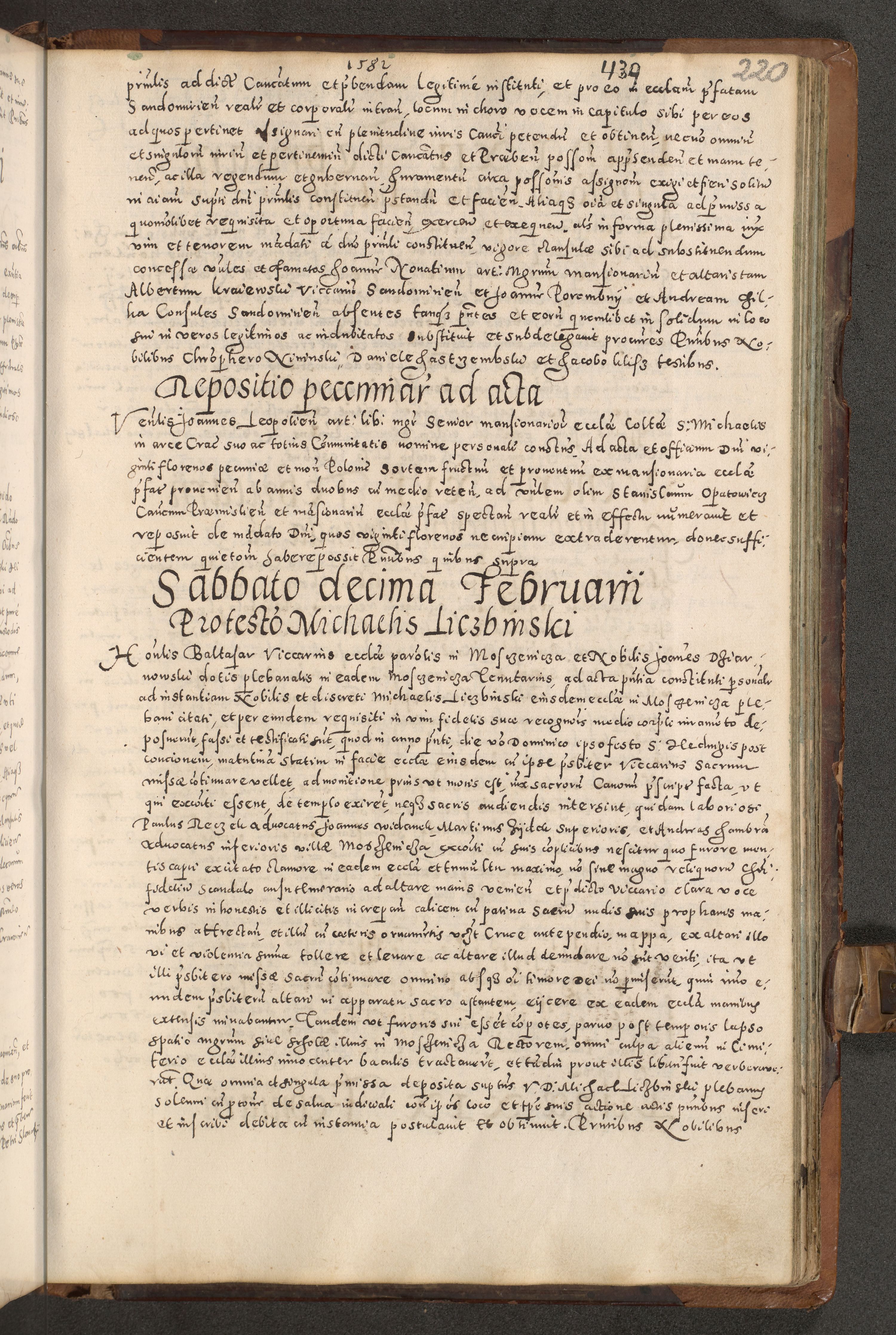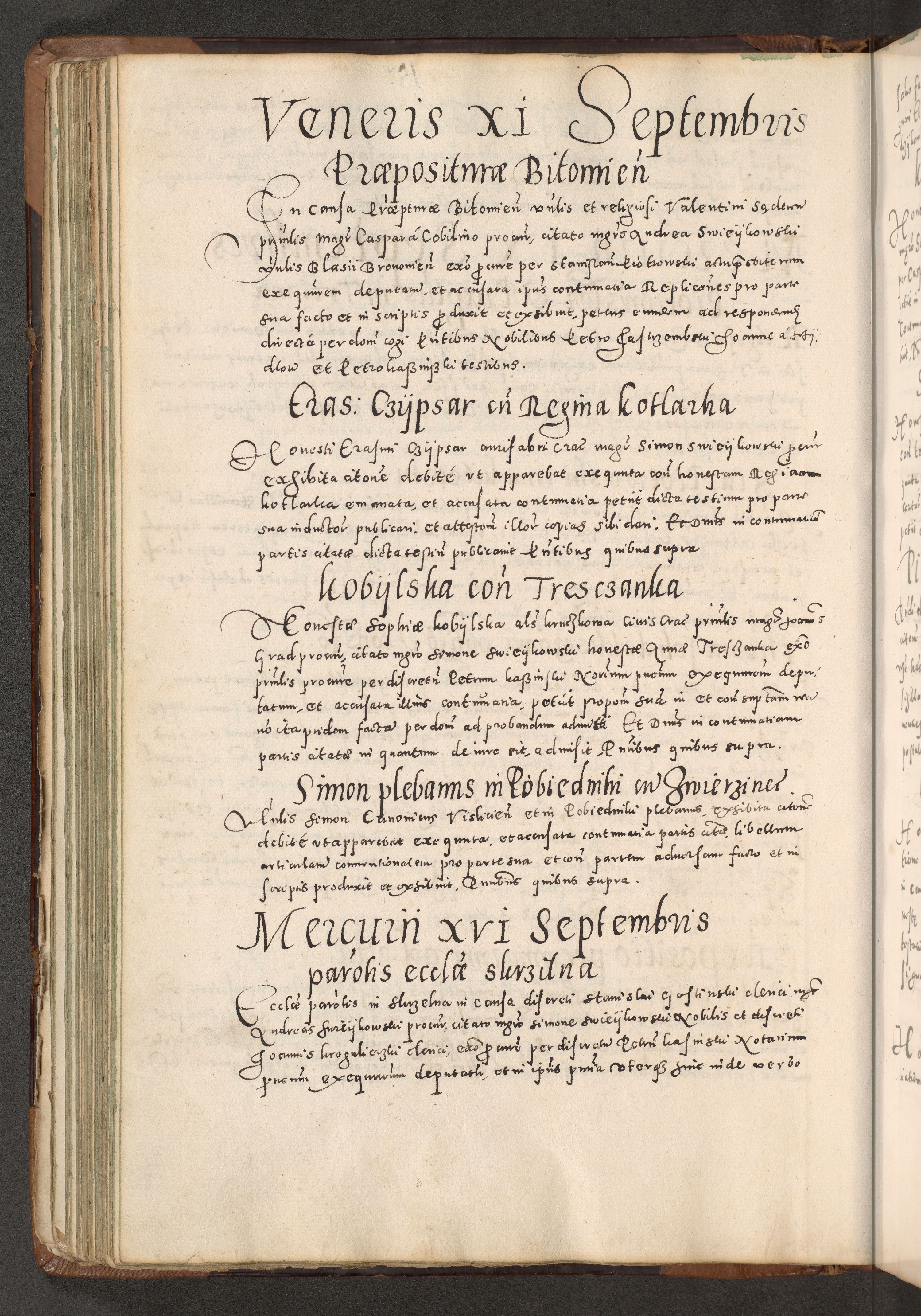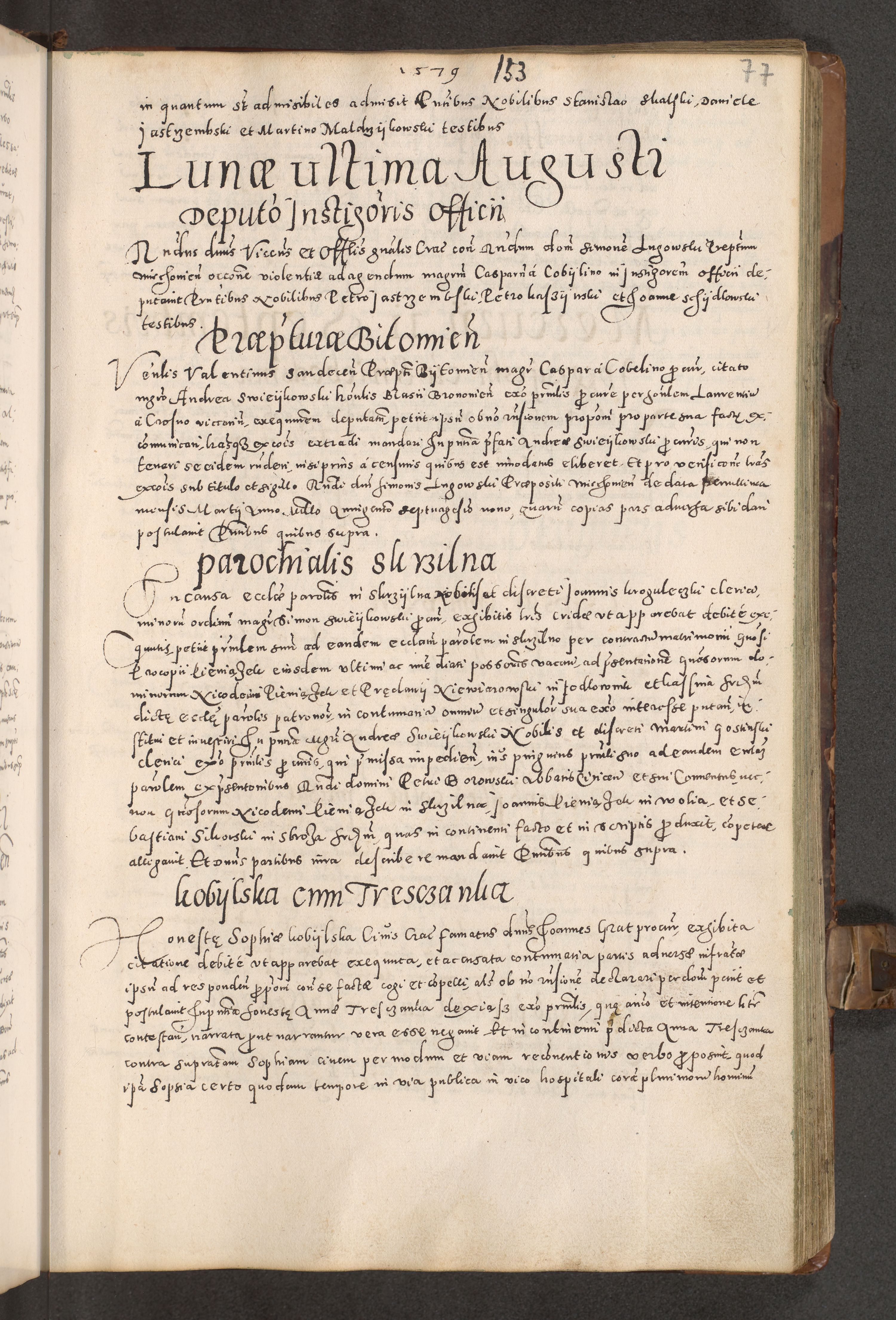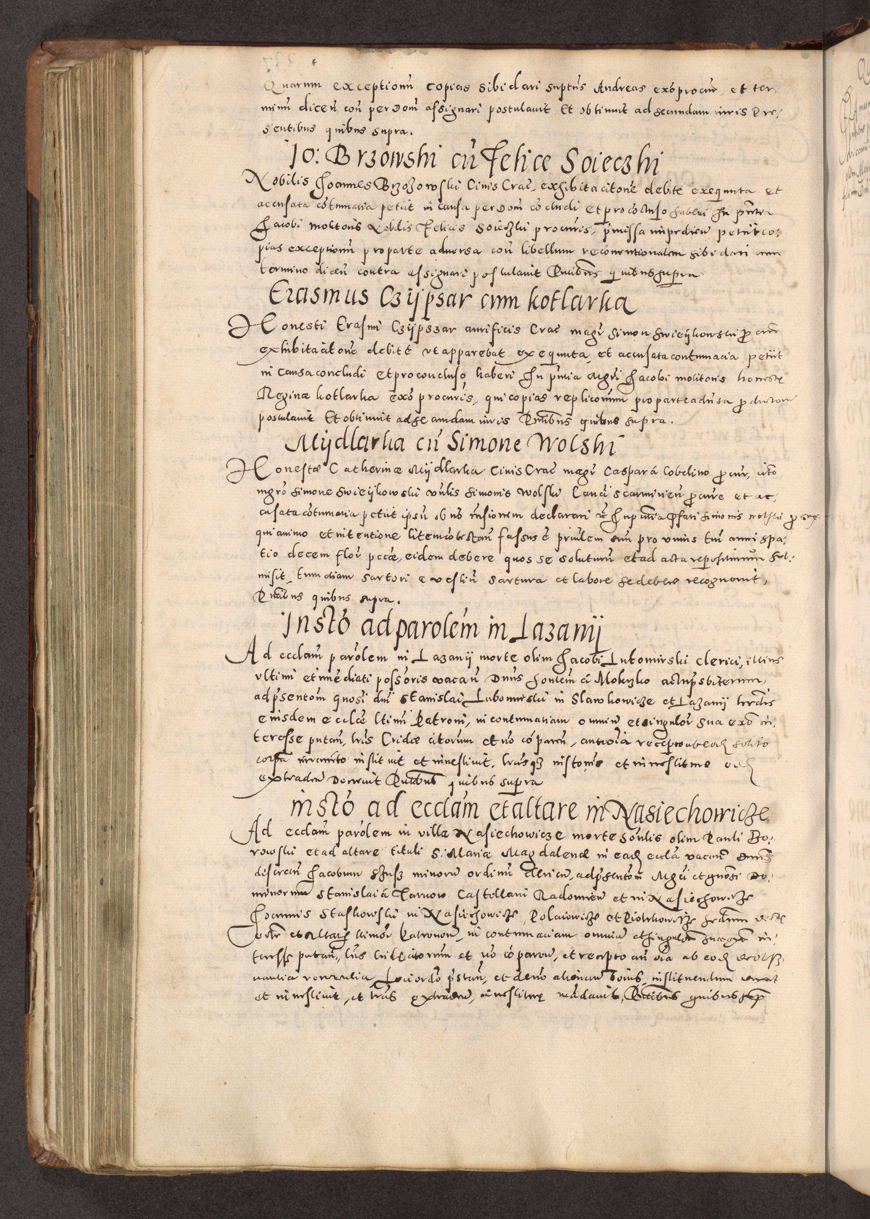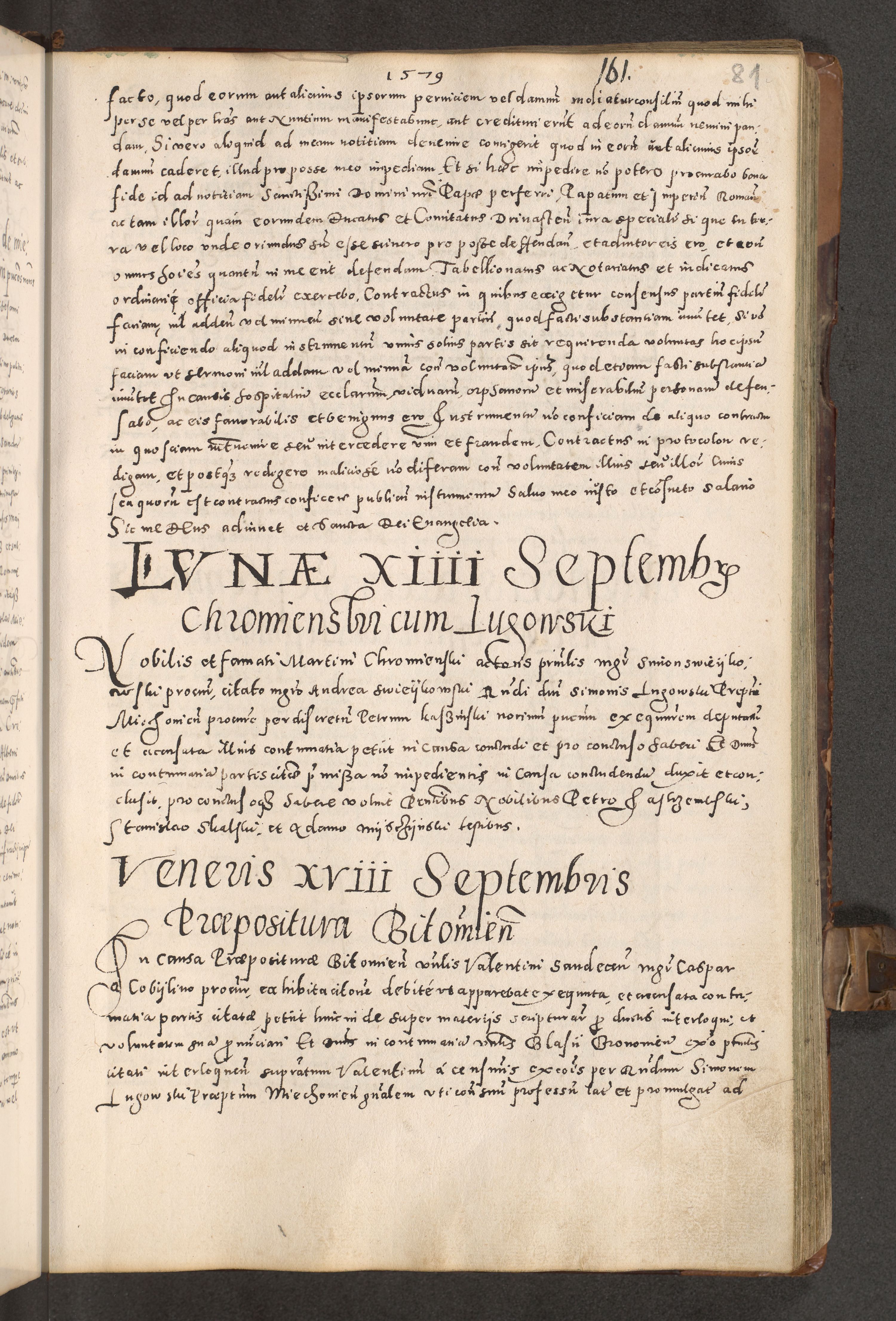 Acta actorum causarum tam diffinitivarum quam interloquutoriarum sententiarum decretorum obligationum quietatorum constuorum pro reverendum coram Reverendo Domino Alberto Nininski Custode Sandecensis Canonico et Archipresbitero Viccarioque in Spiritualibus ac Officiali Generali Cracoviensis ad Annum Domini Millesimum Qumgentesimum Septuagentesimum Nonum cuius Judictio septima Pontificat SS. nostri Domini Gregory pp. tredecimi Anno septimo inchoantur faliciter