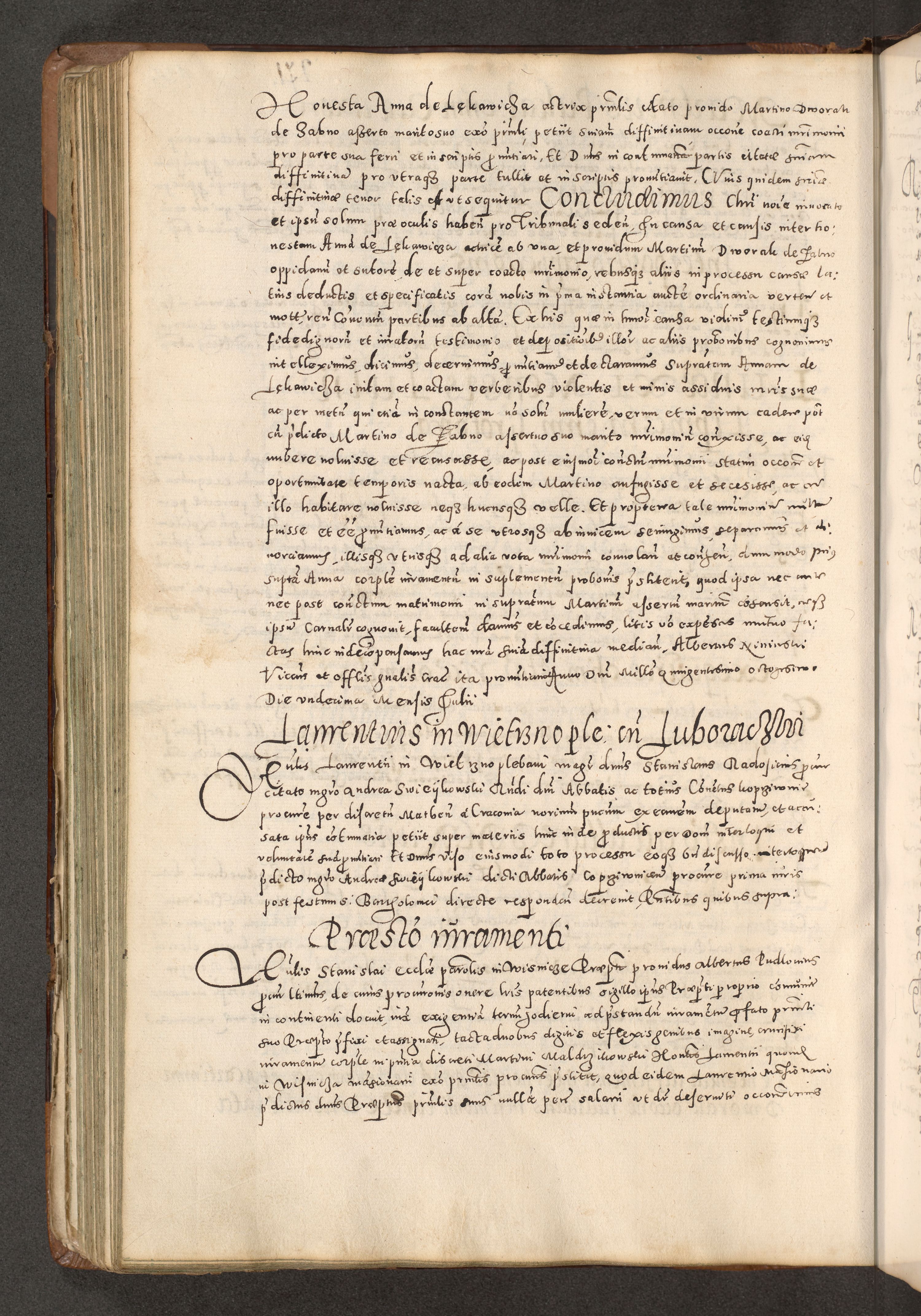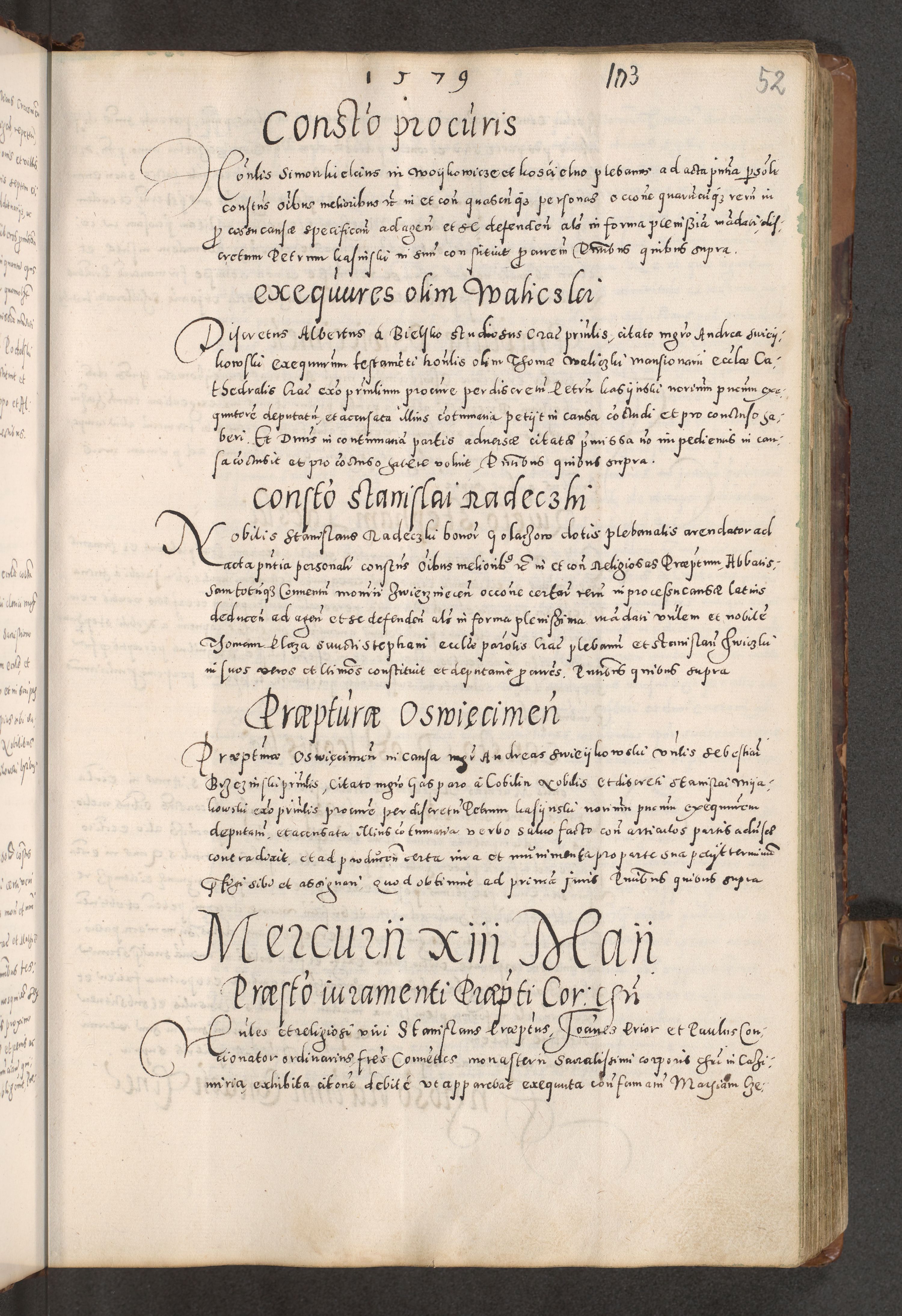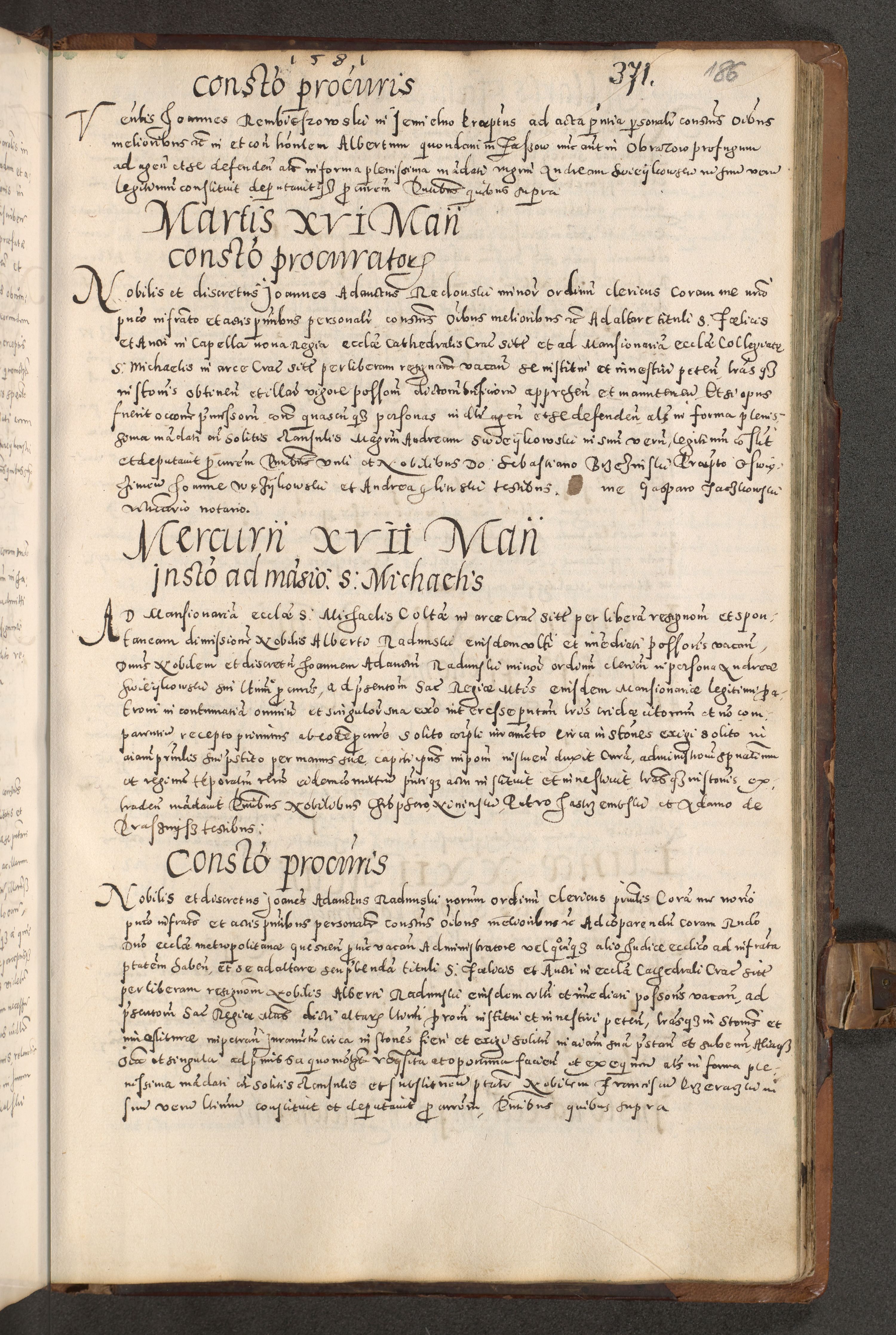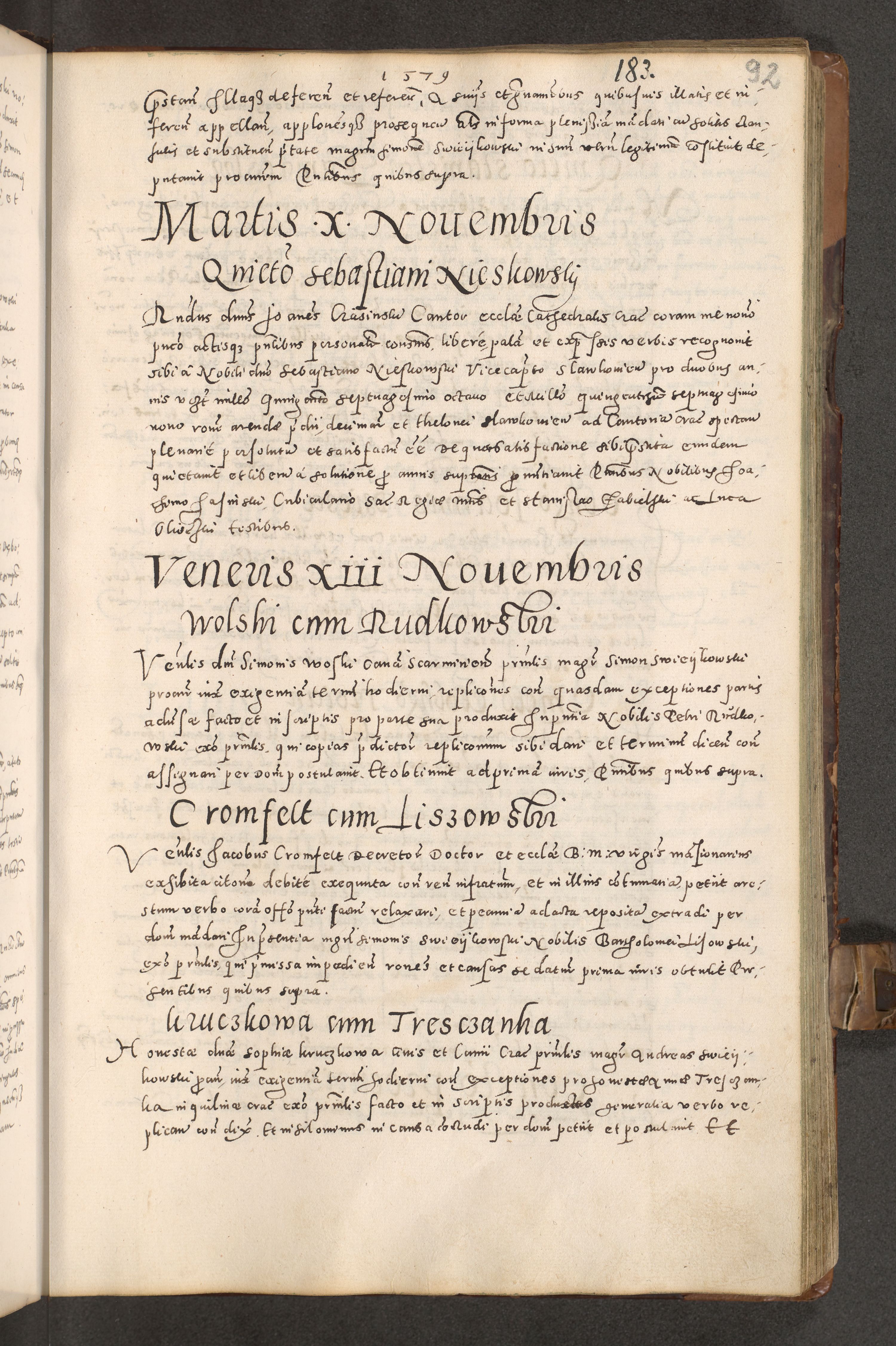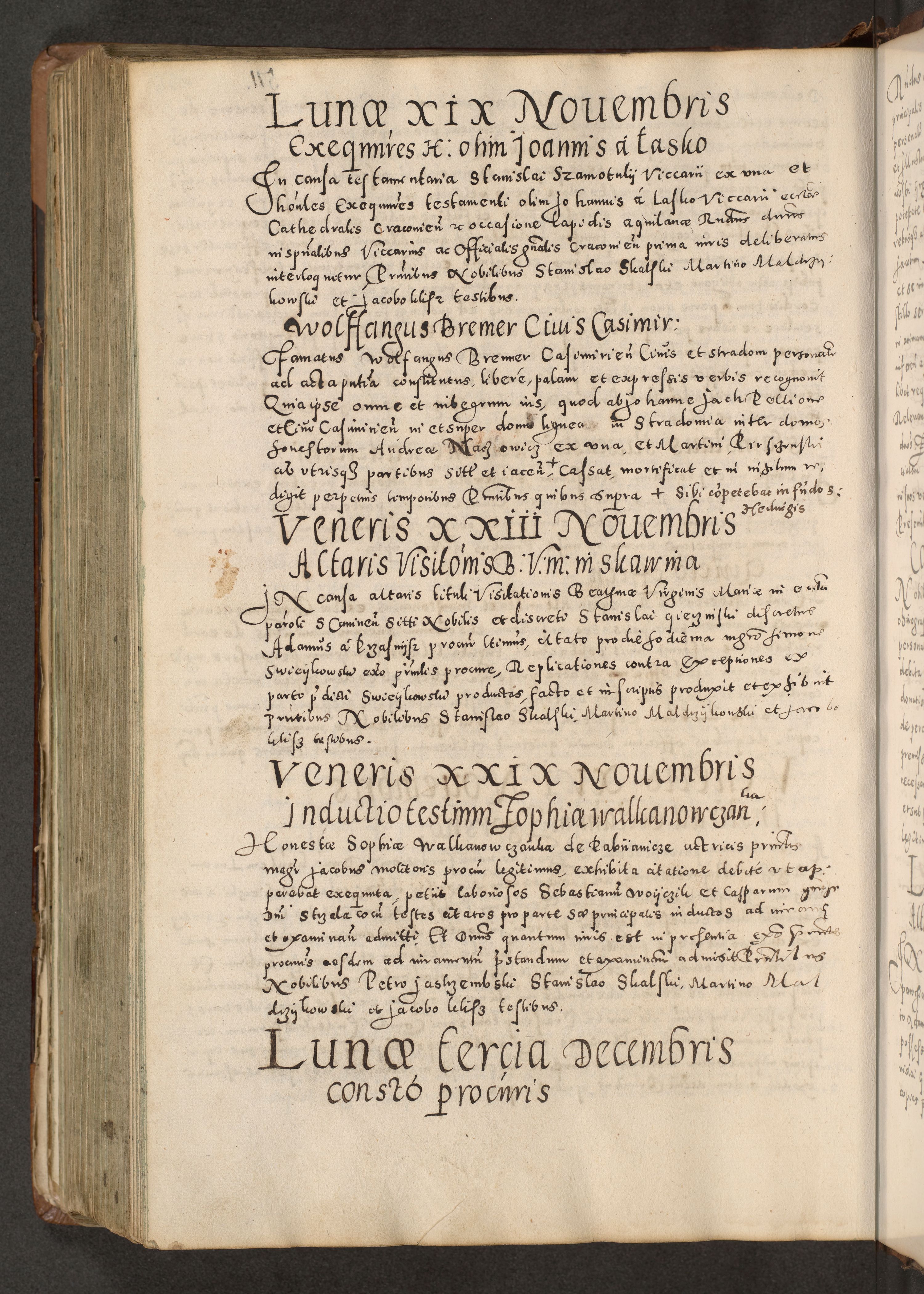 Acta actorum causarum tam diffinitivarum quam interloquutoriarum sententiarum decretorum obligationum quietatorum constuorum pro reverendum coram Reverendo Domino Alberto Nininski Custode Sandecensis Canonico et Archipresbitero Viccarioque in Spiritualibus ac Officiali Generali Cracoviensis ad Annum Domini Millesimum Qumgentesimum Septuagentesimum Nonum cuius Judictio septima Pontificat SS. nostri Domini Gregory pp. tredecimi Anno septimo inchoantur faliciter