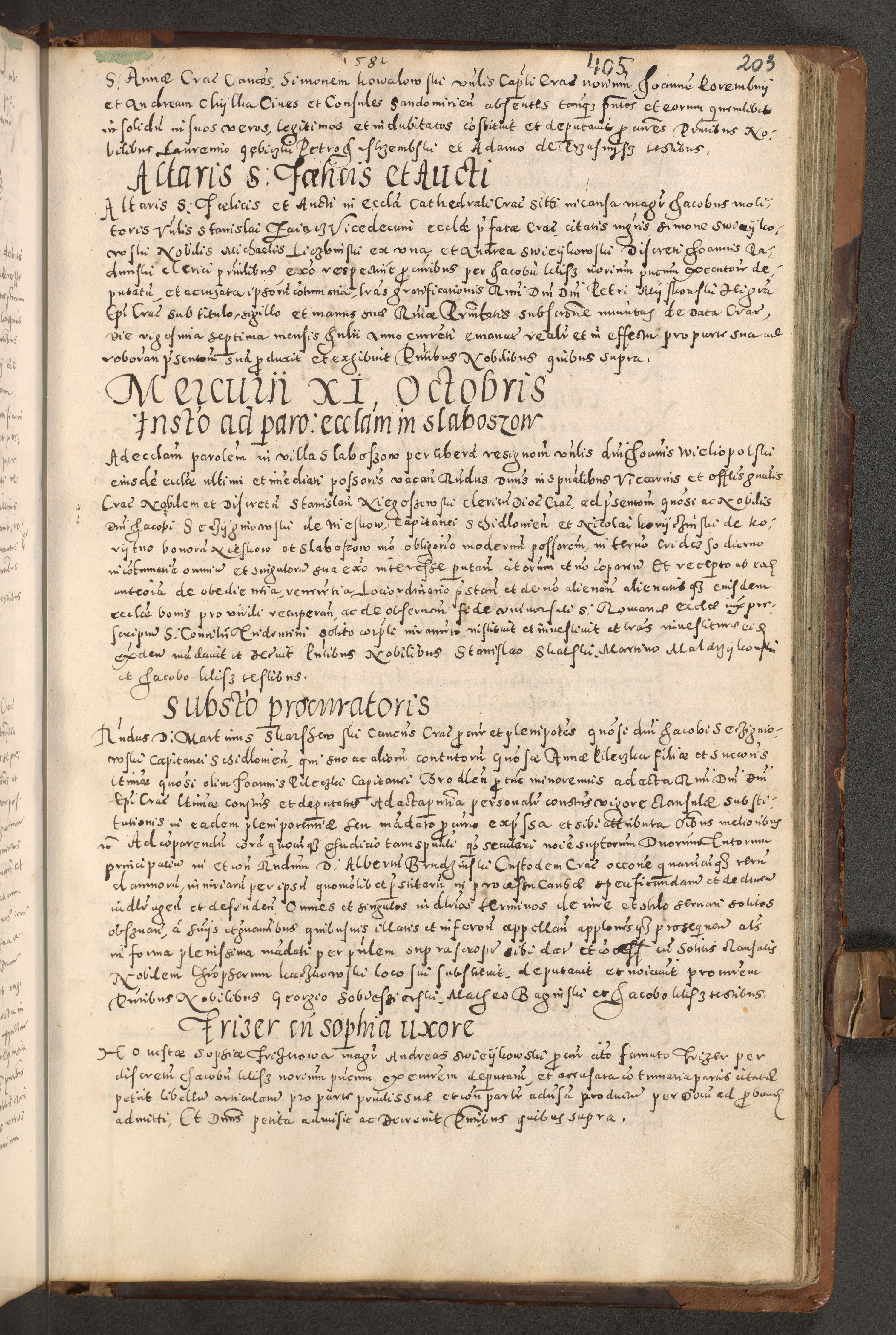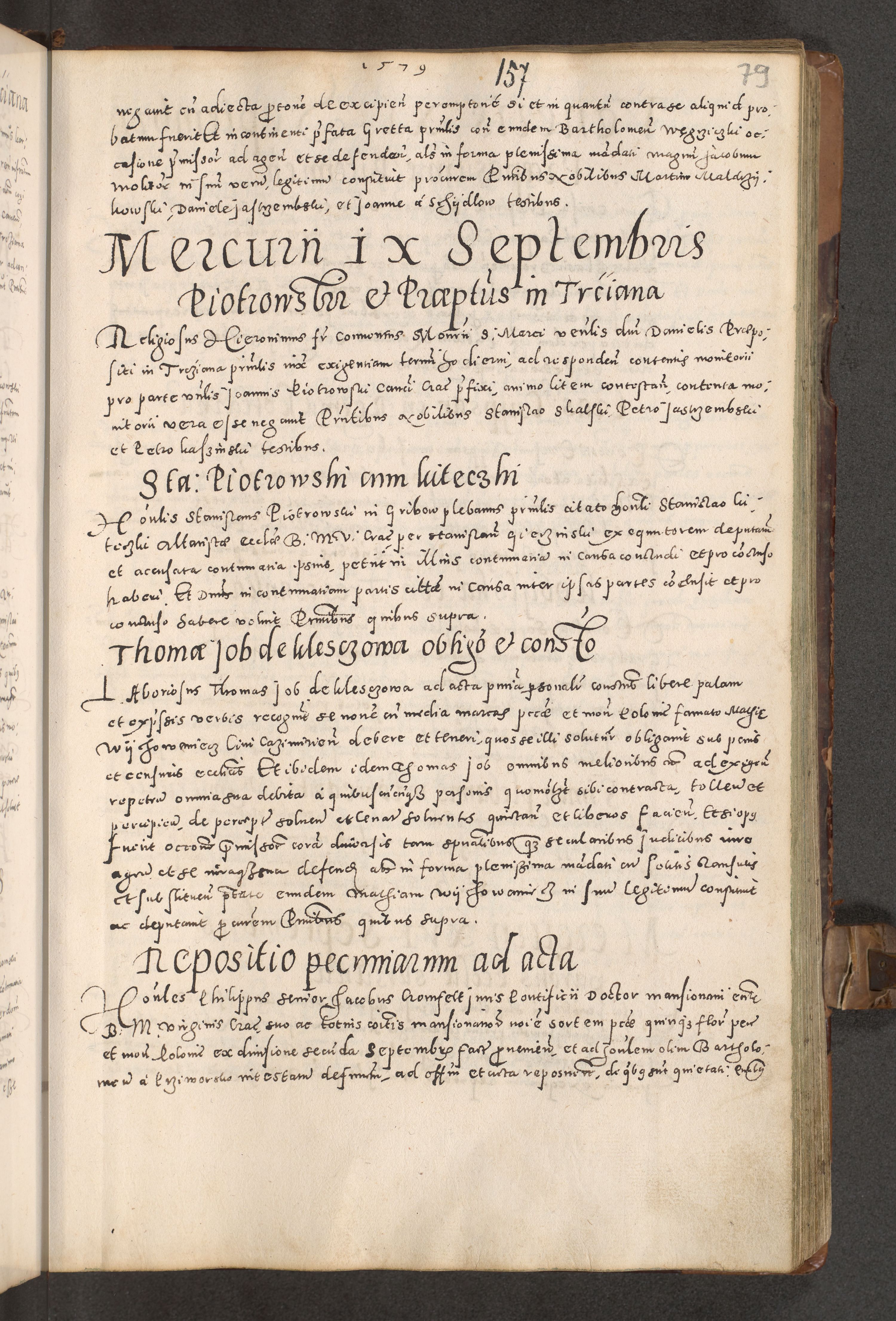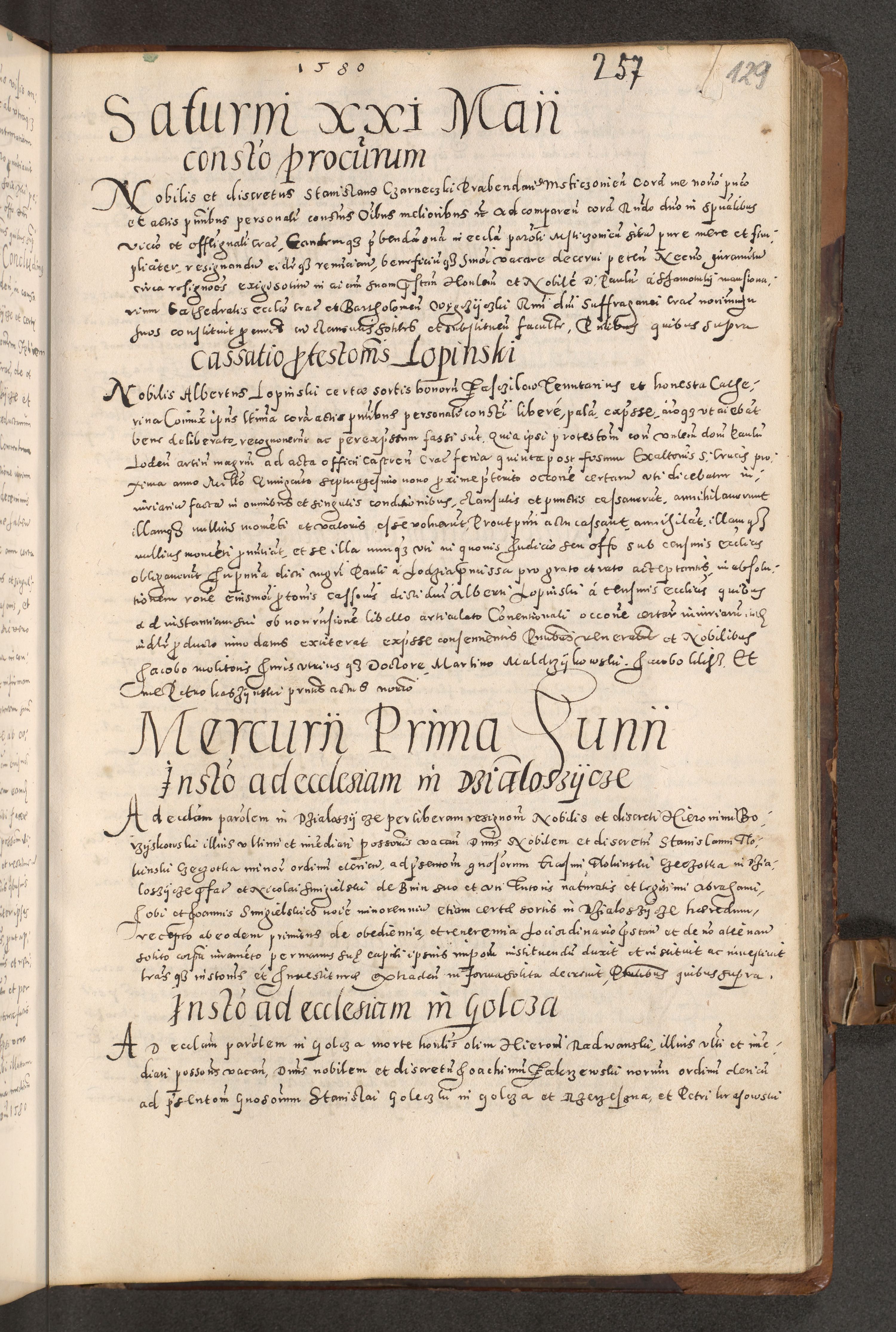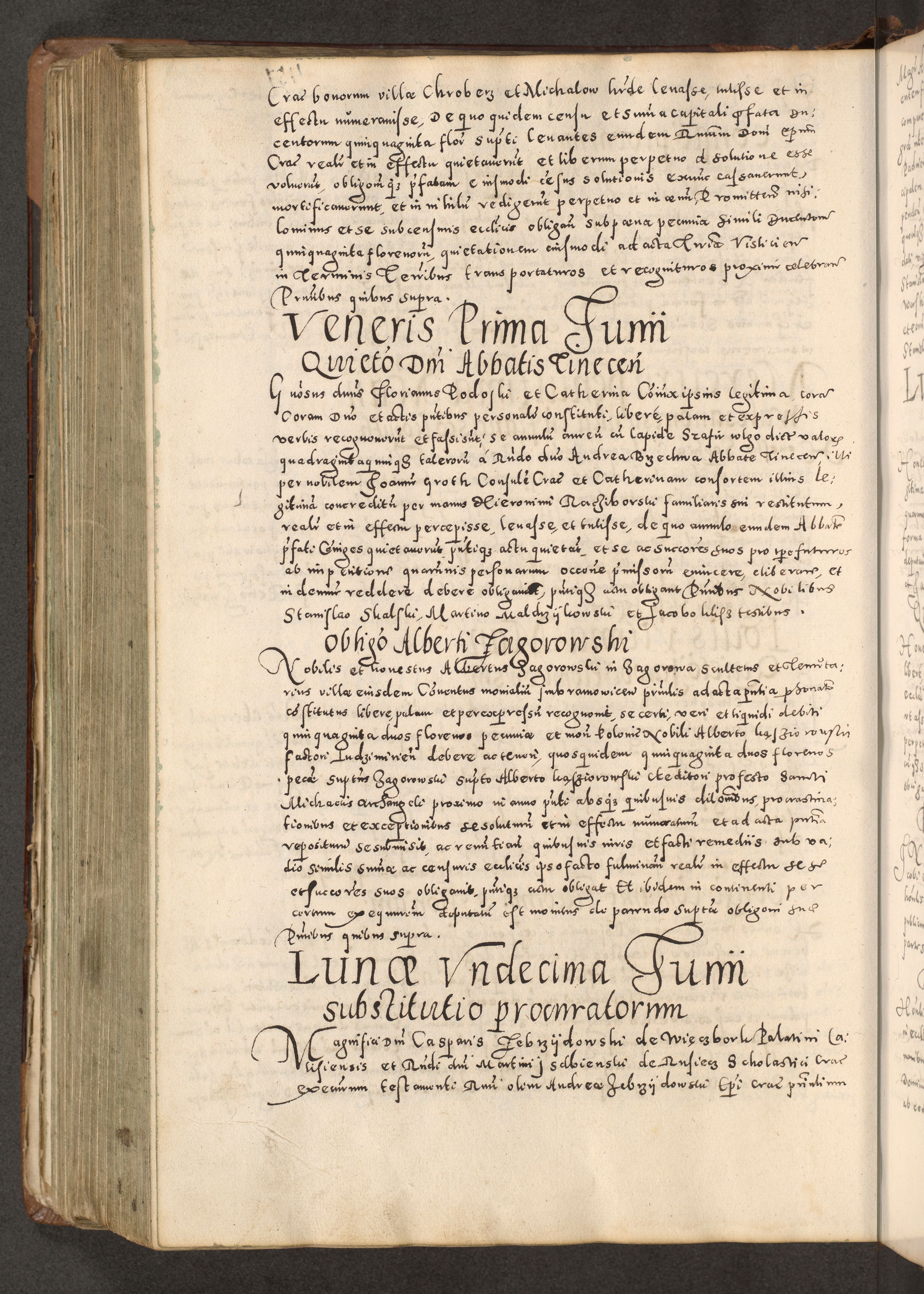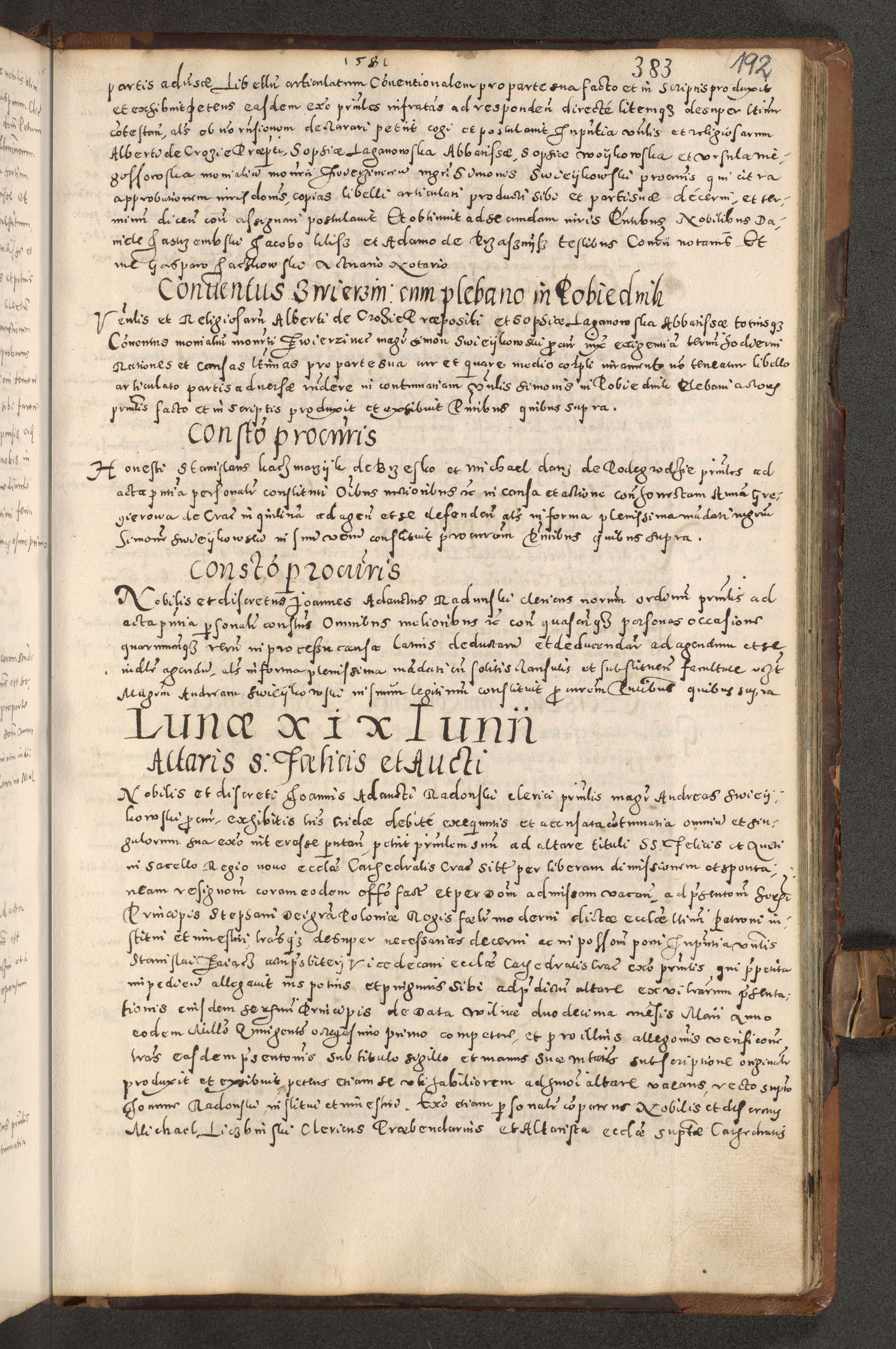 Acta actorum causarum tam diffinitivarum quam interloquutoriarum sententiarum decretorum obligationum quietatorum constuorum pro reverendum coram Reverendo Domino Alberto Nininski Custode Sandecensis Canonico et Archipresbitero Viccarioque in Spiritualibus ac Officiali Generali Cracoviensis ad Annum Domini Millesimum Qumgentesimum Septuagentesimum Nonum cuius Judictio septima Pontificat SS. nostri Domini Gregory pp. tredecimi Anno septimo inchoantur faliciter
