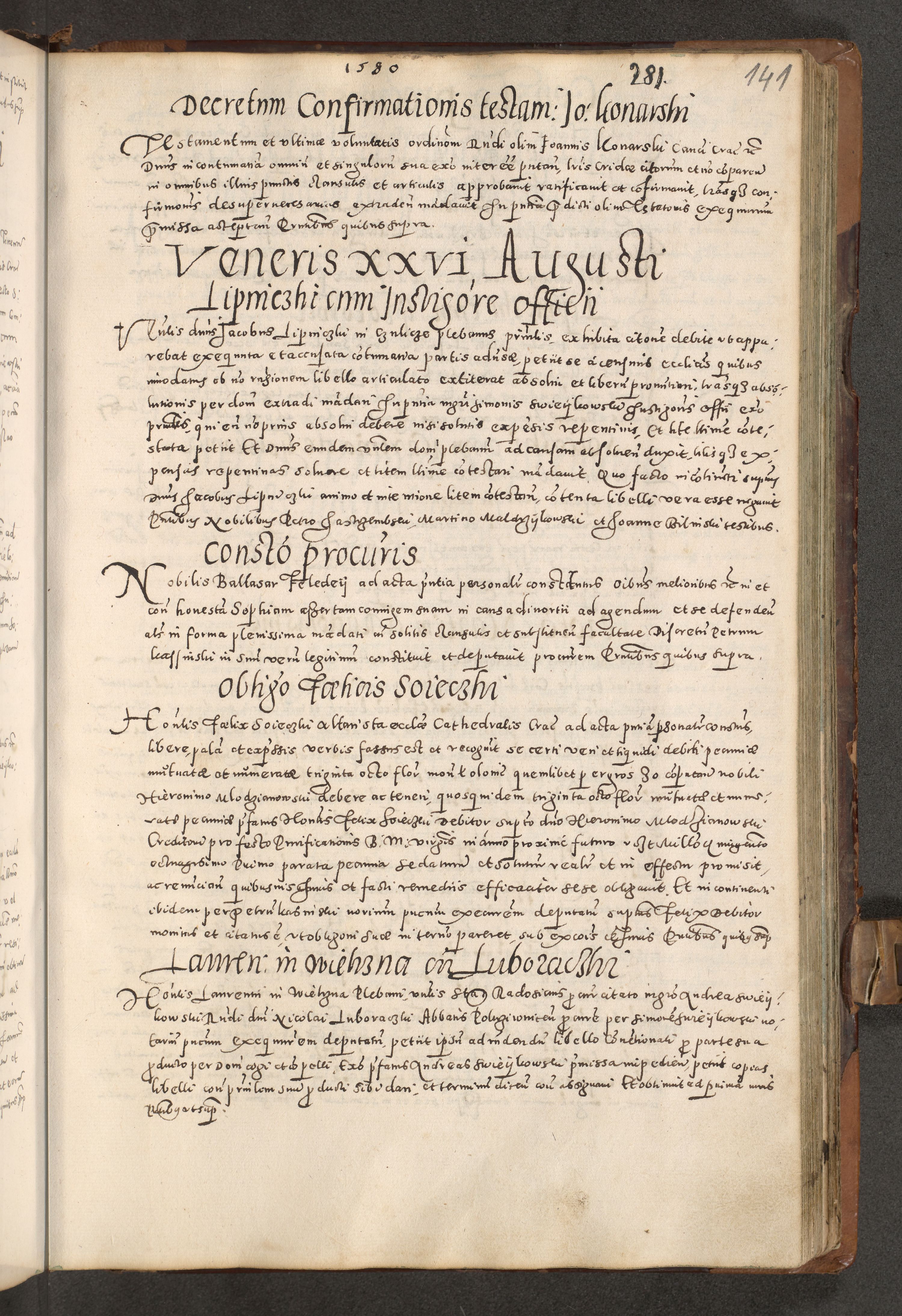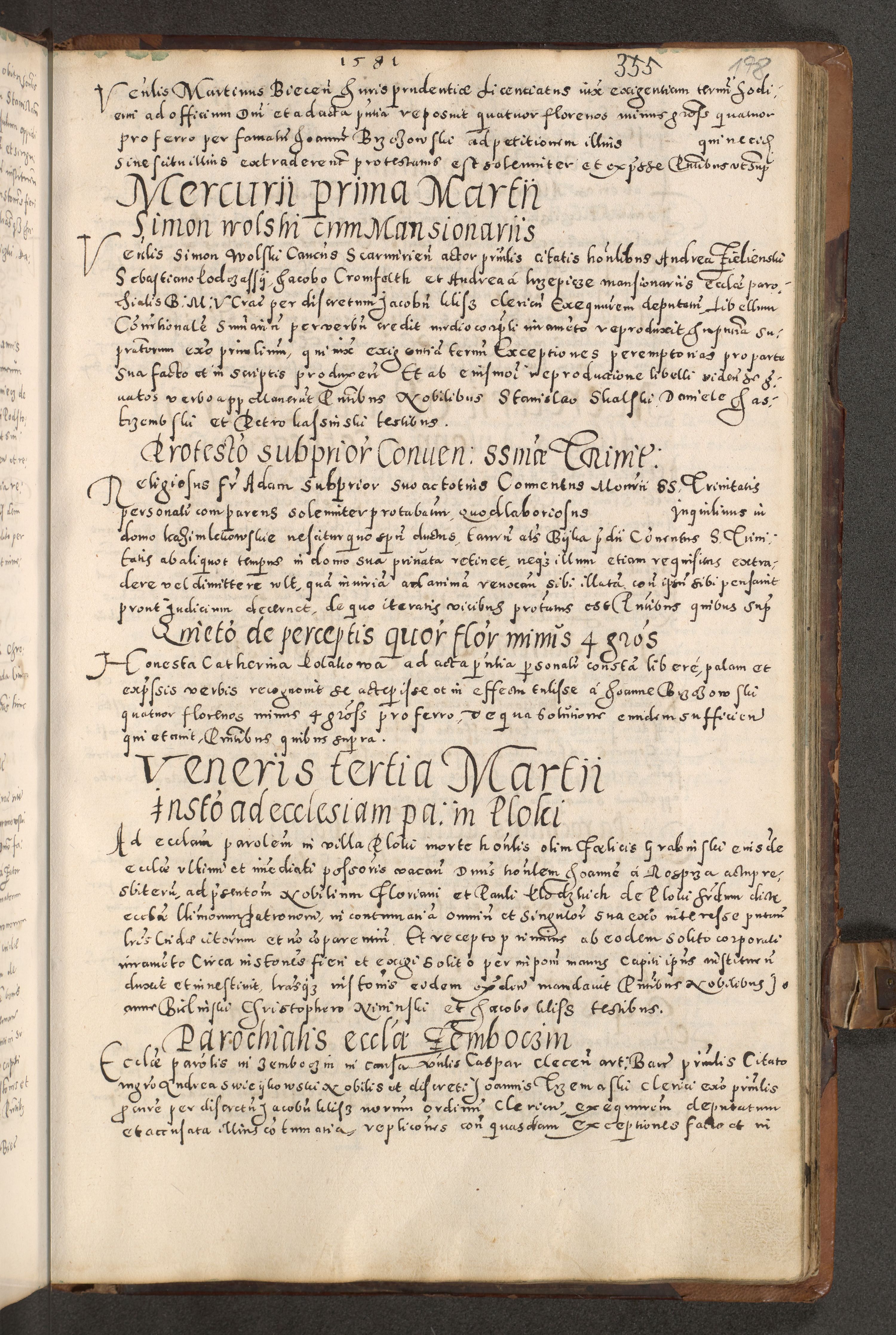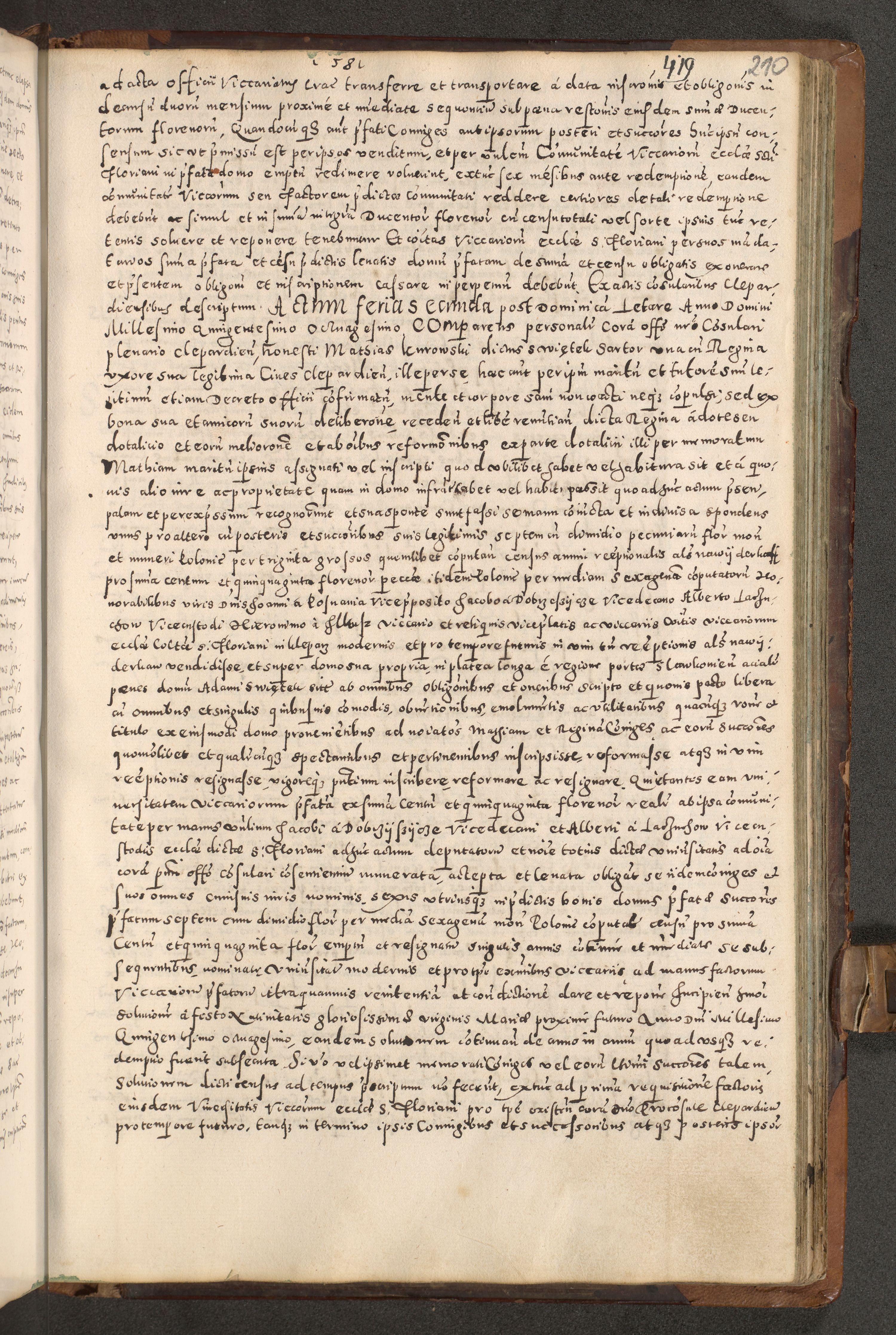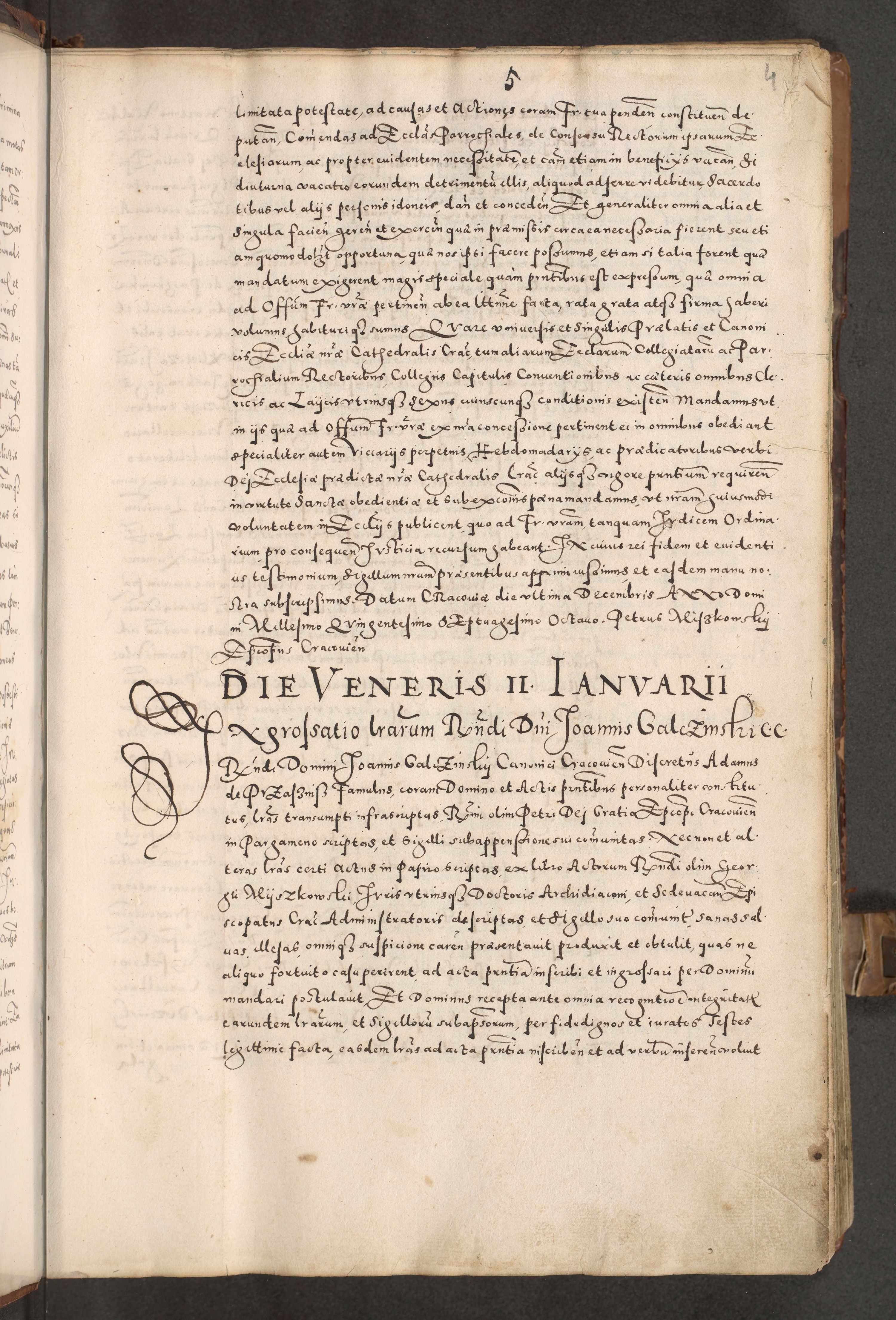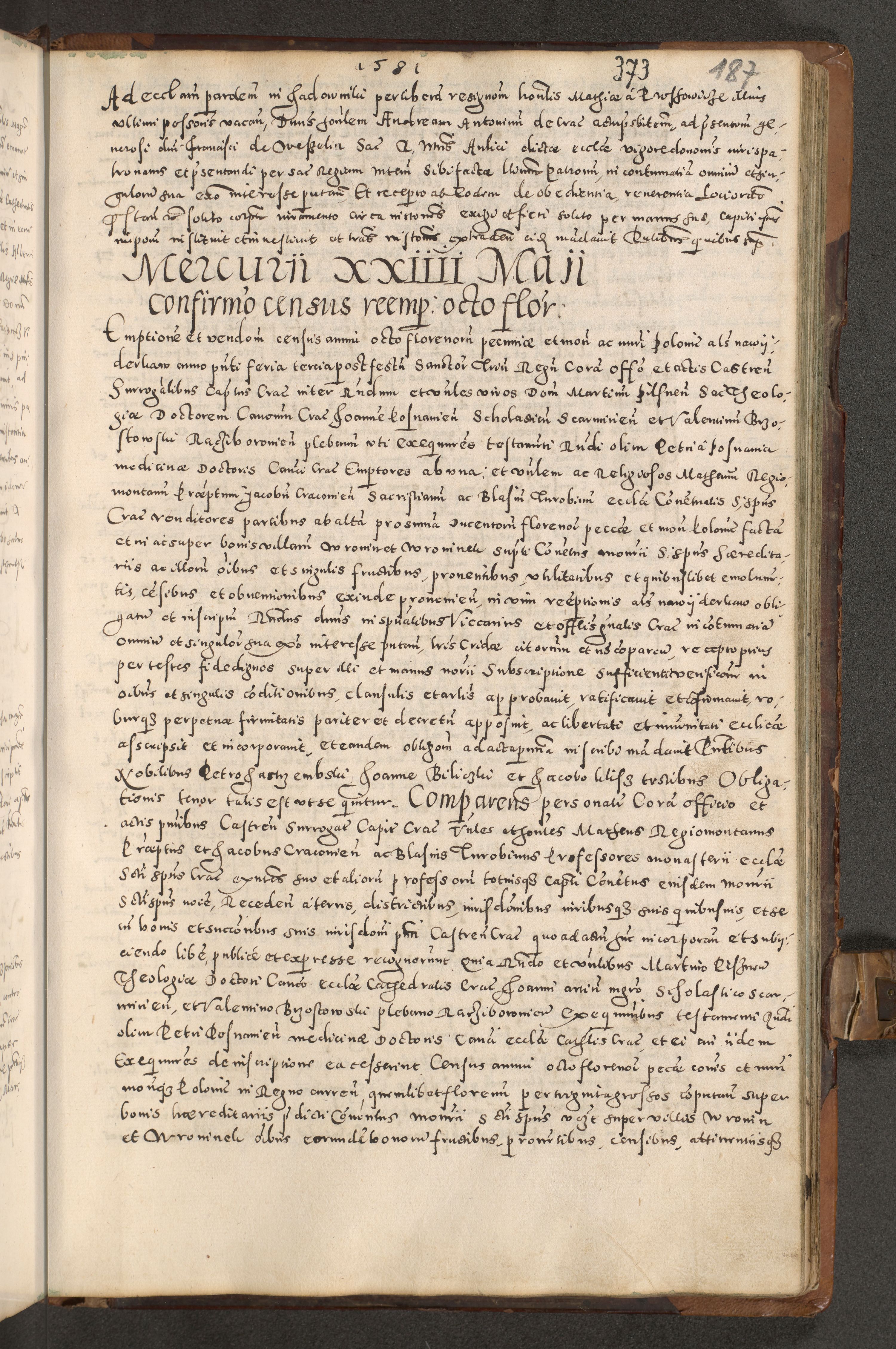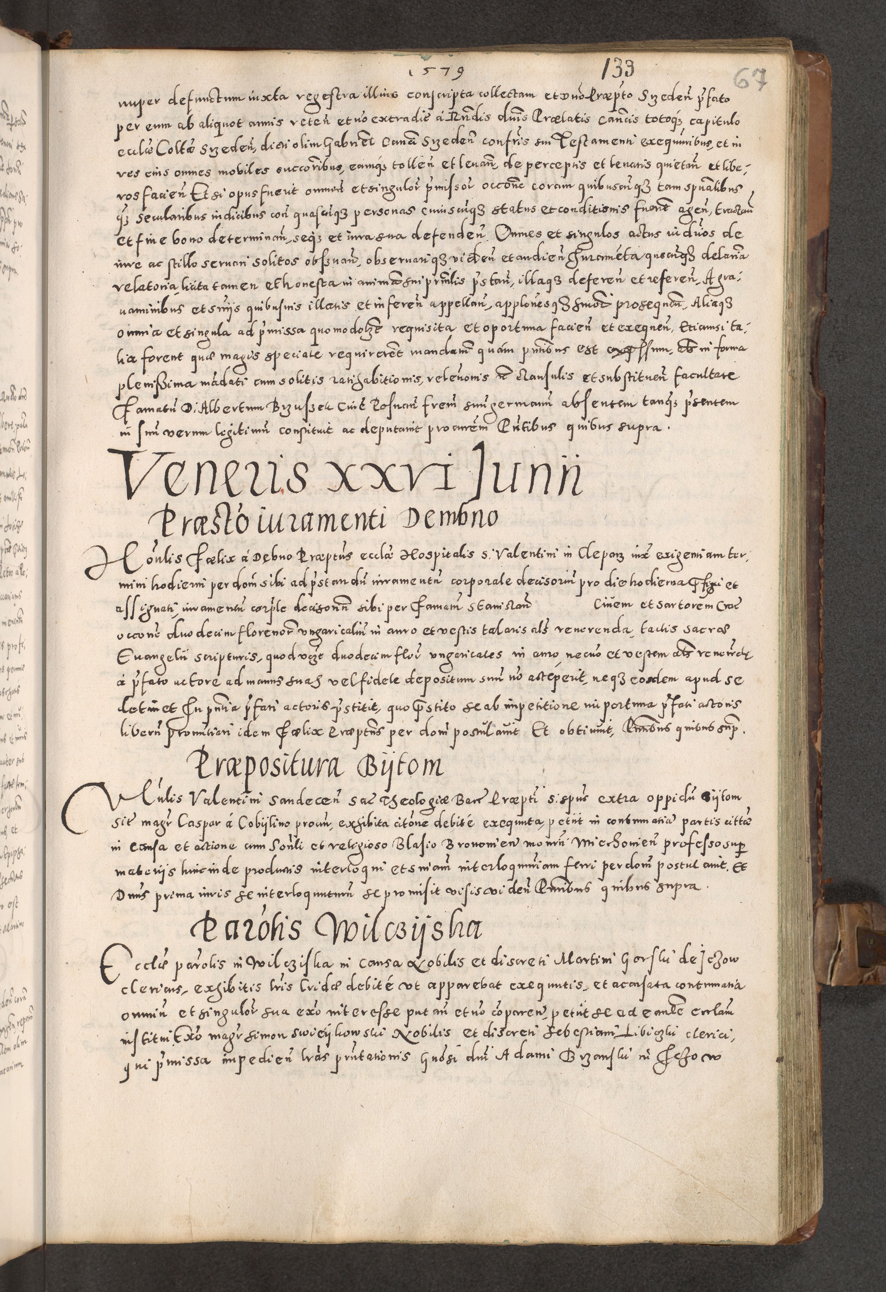 Acta actorum causarum tam diffinitivarum quam interloquutoriarum sententiarum decretorum obligationum quietatorum constuorum pro reverendum coram Reverendo Domino Alberto Nininski Custode Sandecensis Canonico et Archipresbitero Viccarioque in Spiritualibus ac Officiali Generali Cracoviensis ad Annum Domini Millesimum Qumgentesimum Septuagentesimum Nonum cuius Judictio septima Pontificat SS. nostri Domini Gregory pp. tredecimi Anno septimo inchoantur faliciter