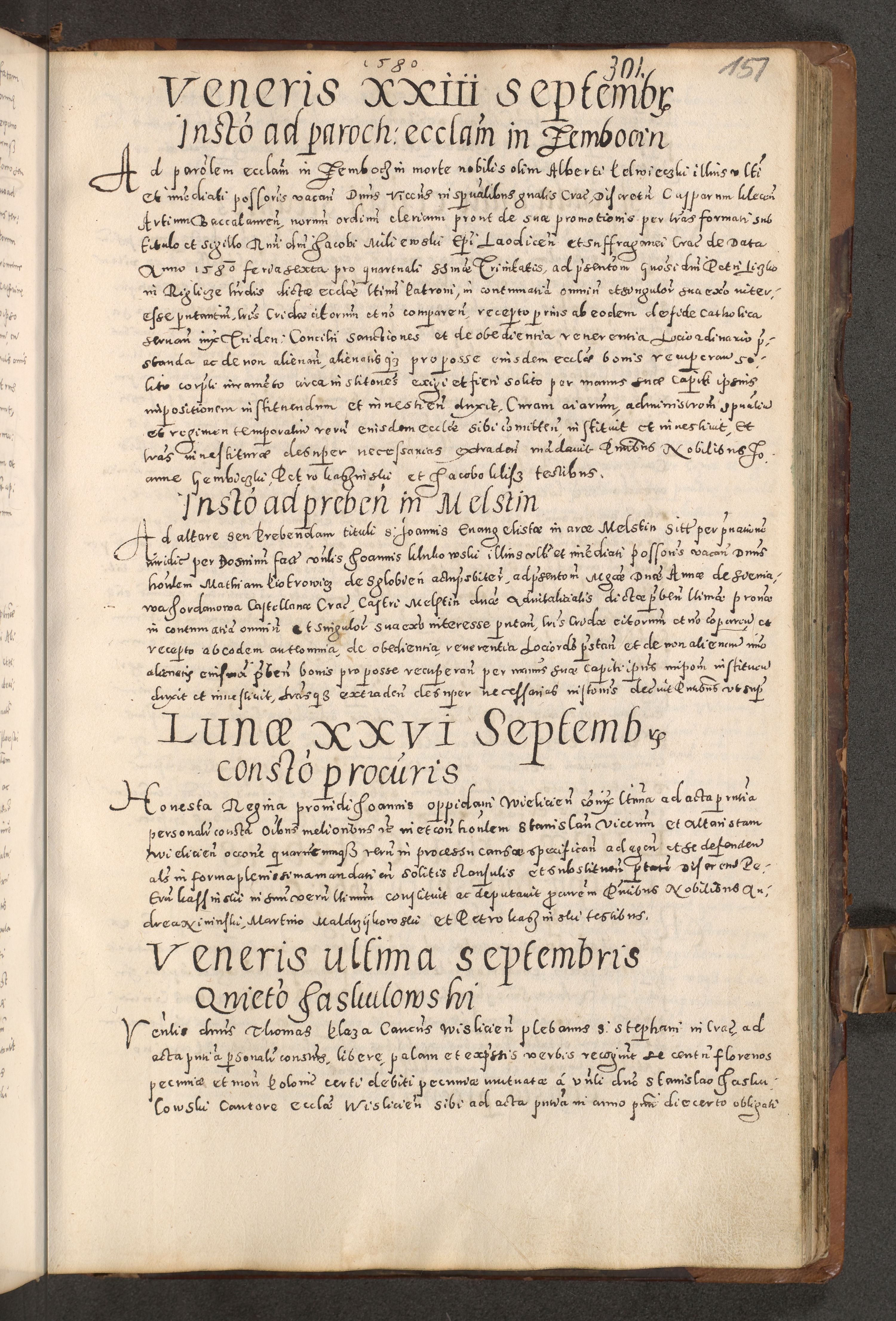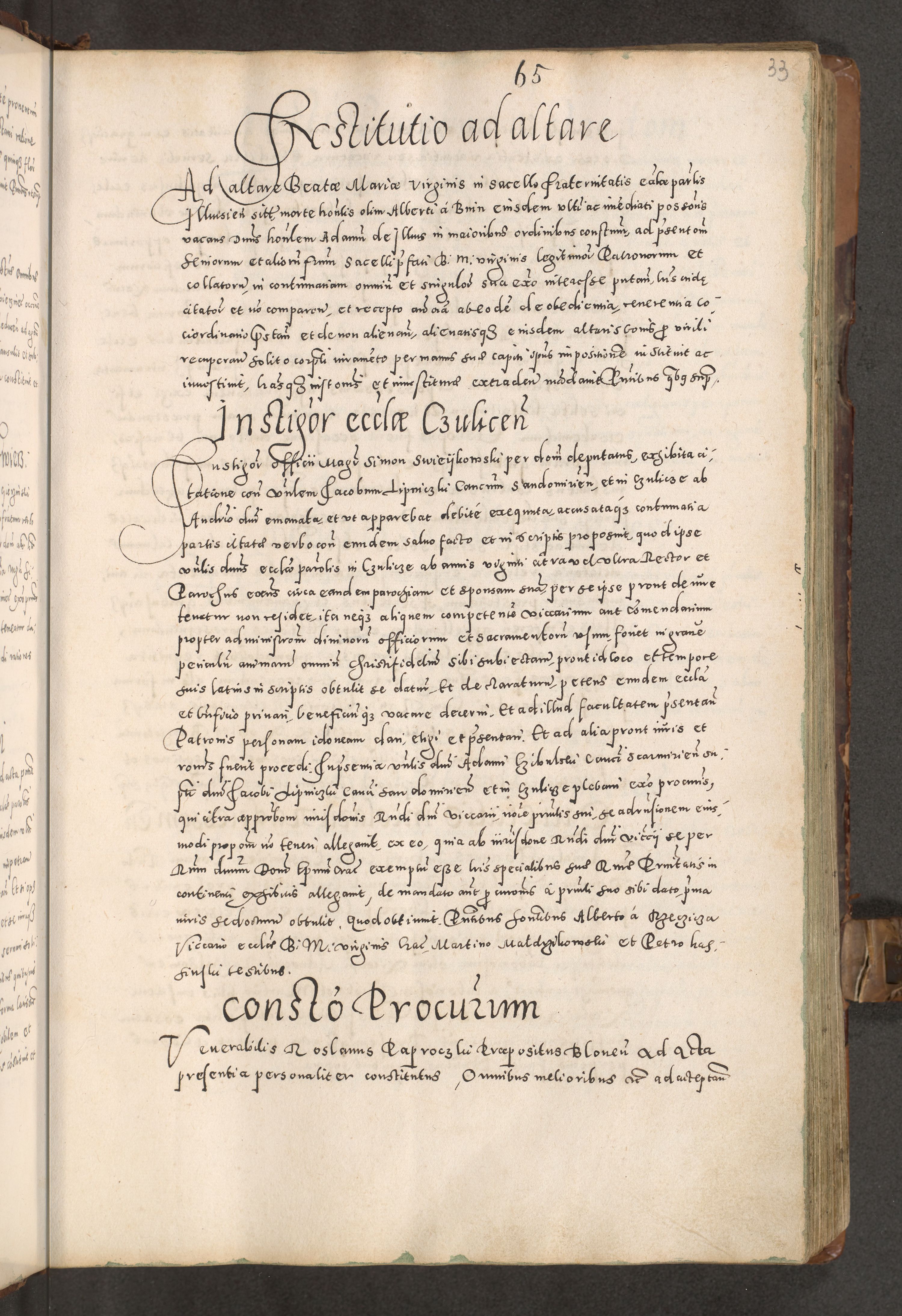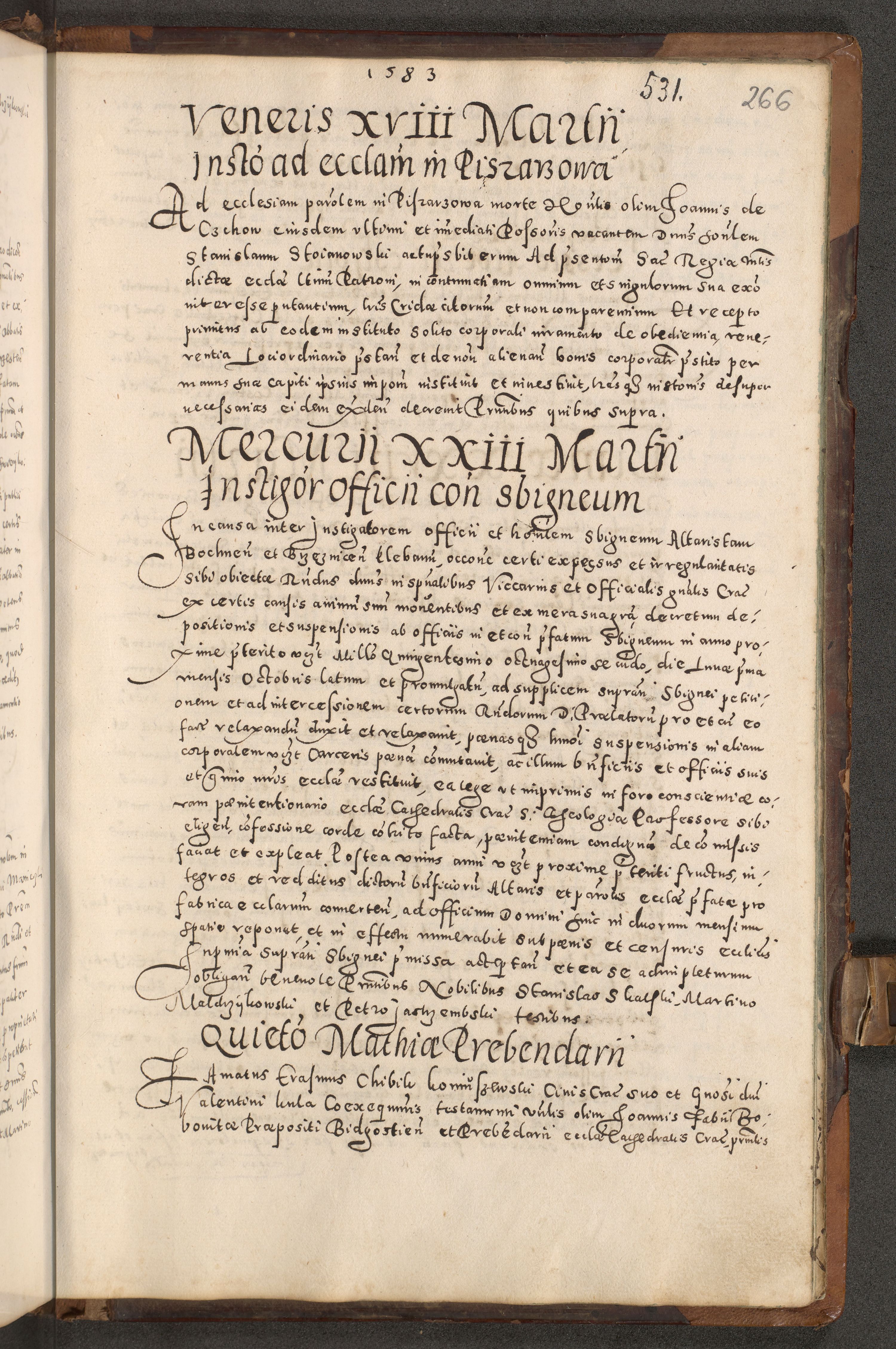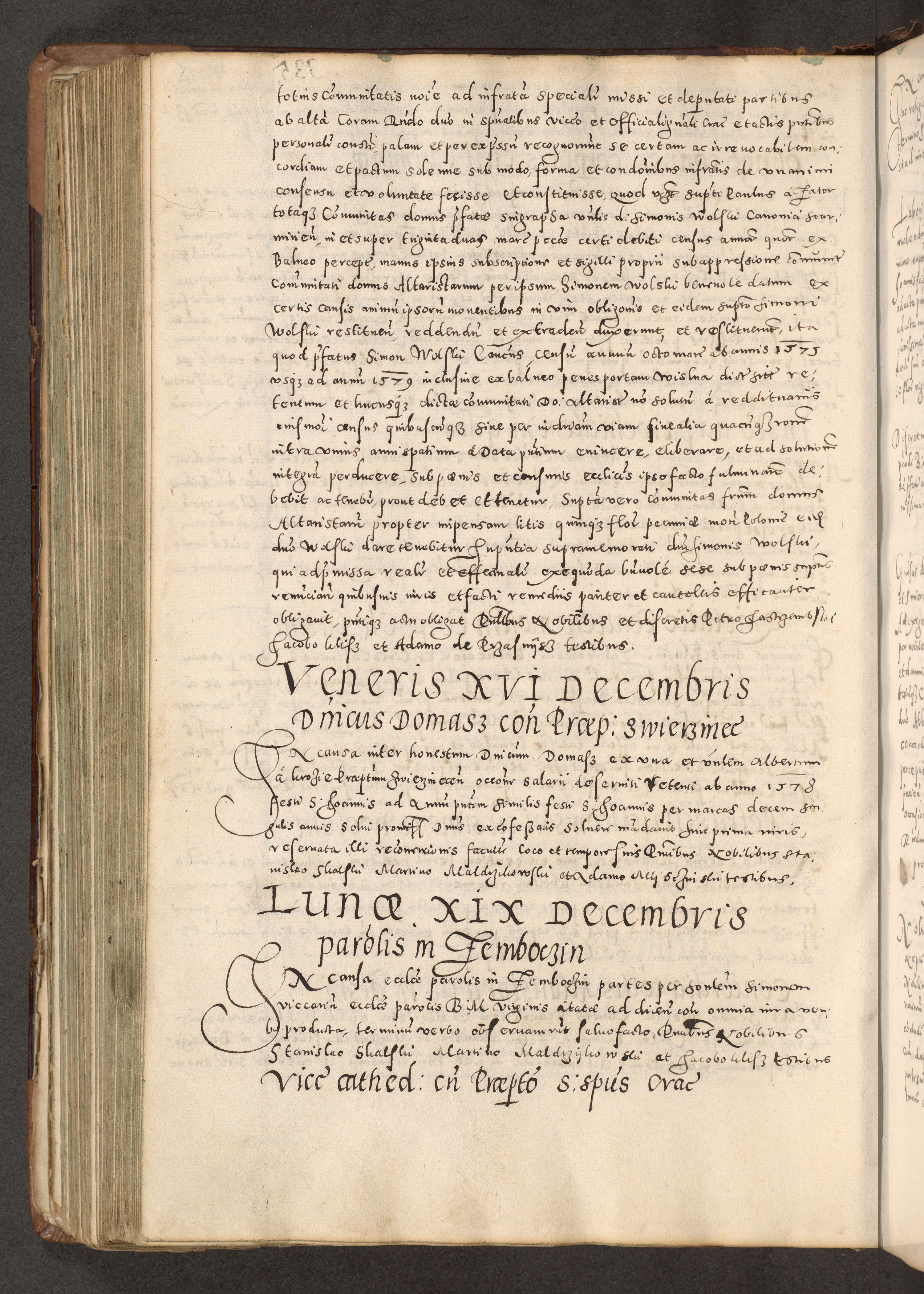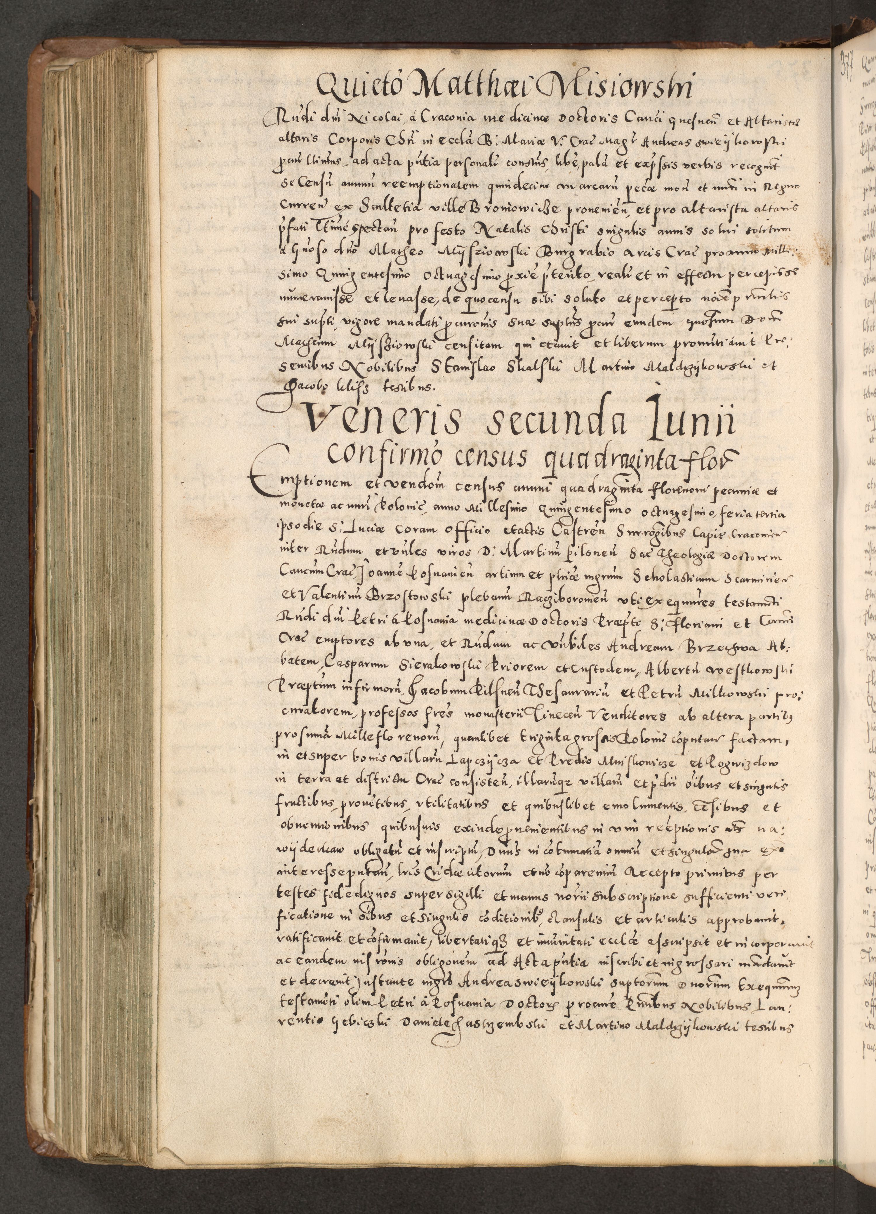 Acta actorum causarum tam diffinitivarum quam interloquutoriarum sententiarum decretorum obligationum quietatorum constuorum pro reverendum coram Reverendo Domino Alberto Nininski Custode Sandecensis Canonico et Archipresbitero Viccarioque in Spiritualibus ac Officiali Generali Cracoviensis ad Annum Domini Millesimum Qumgentesimum Septuagentesimum Nonum cuius Judictio septima Pontificat SS. nostri Domini Gregory pp. tredecimi Anno septimo inchoantur faliciter
