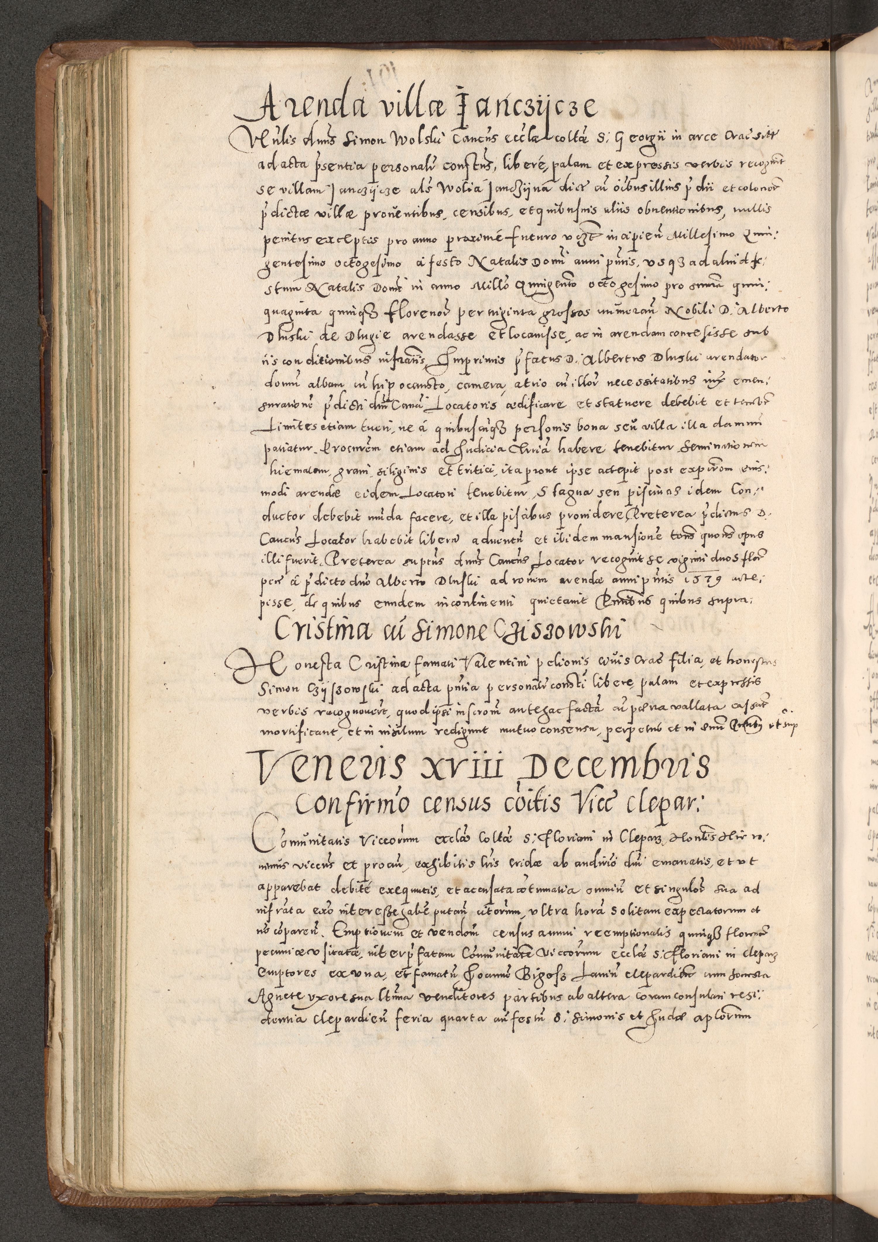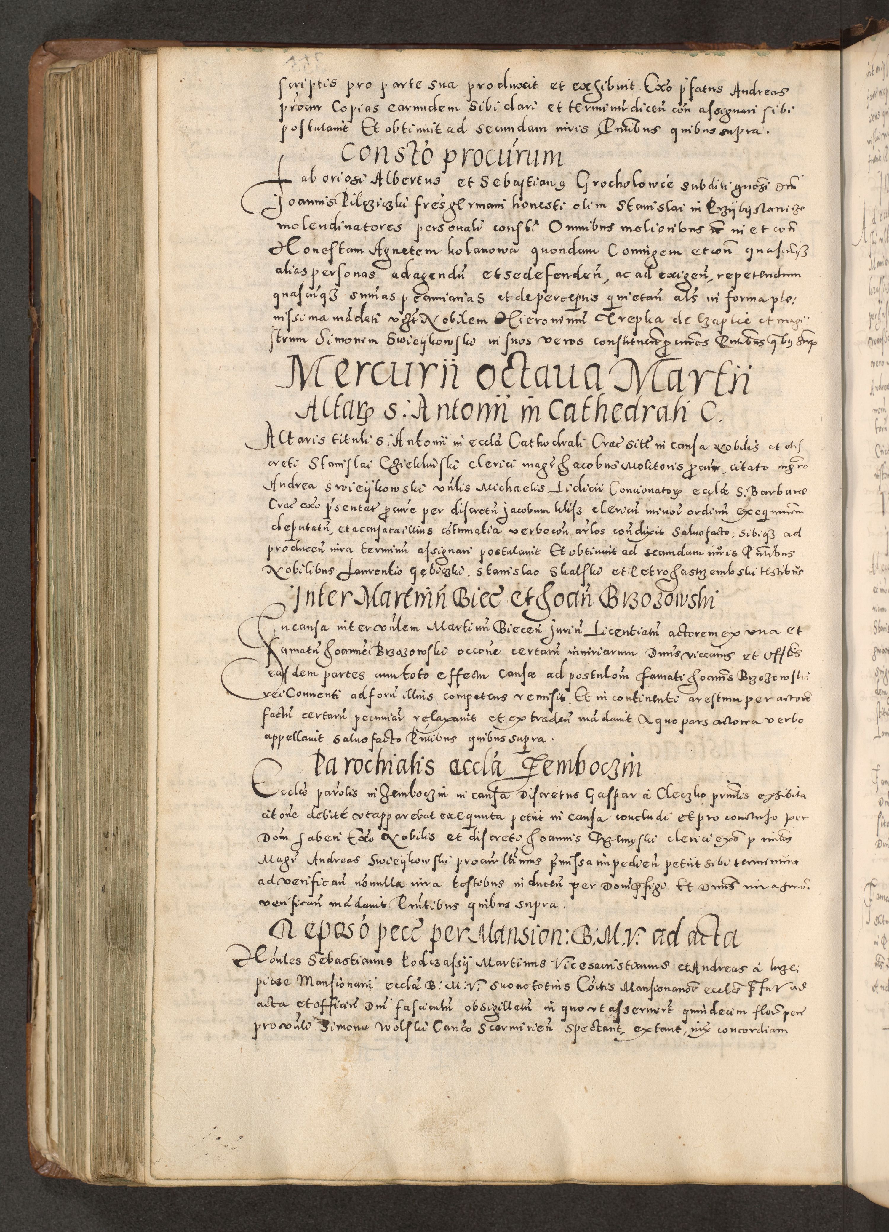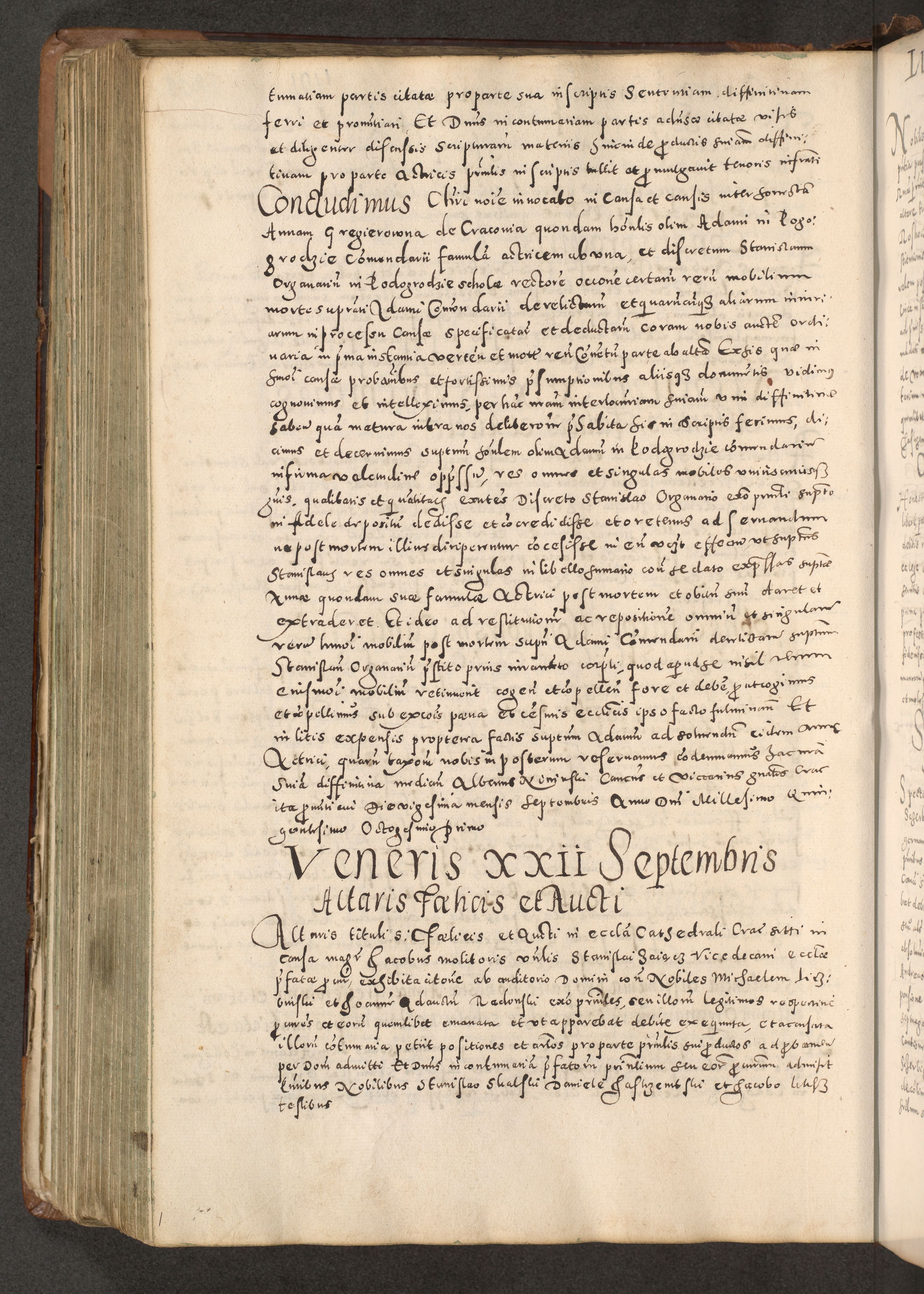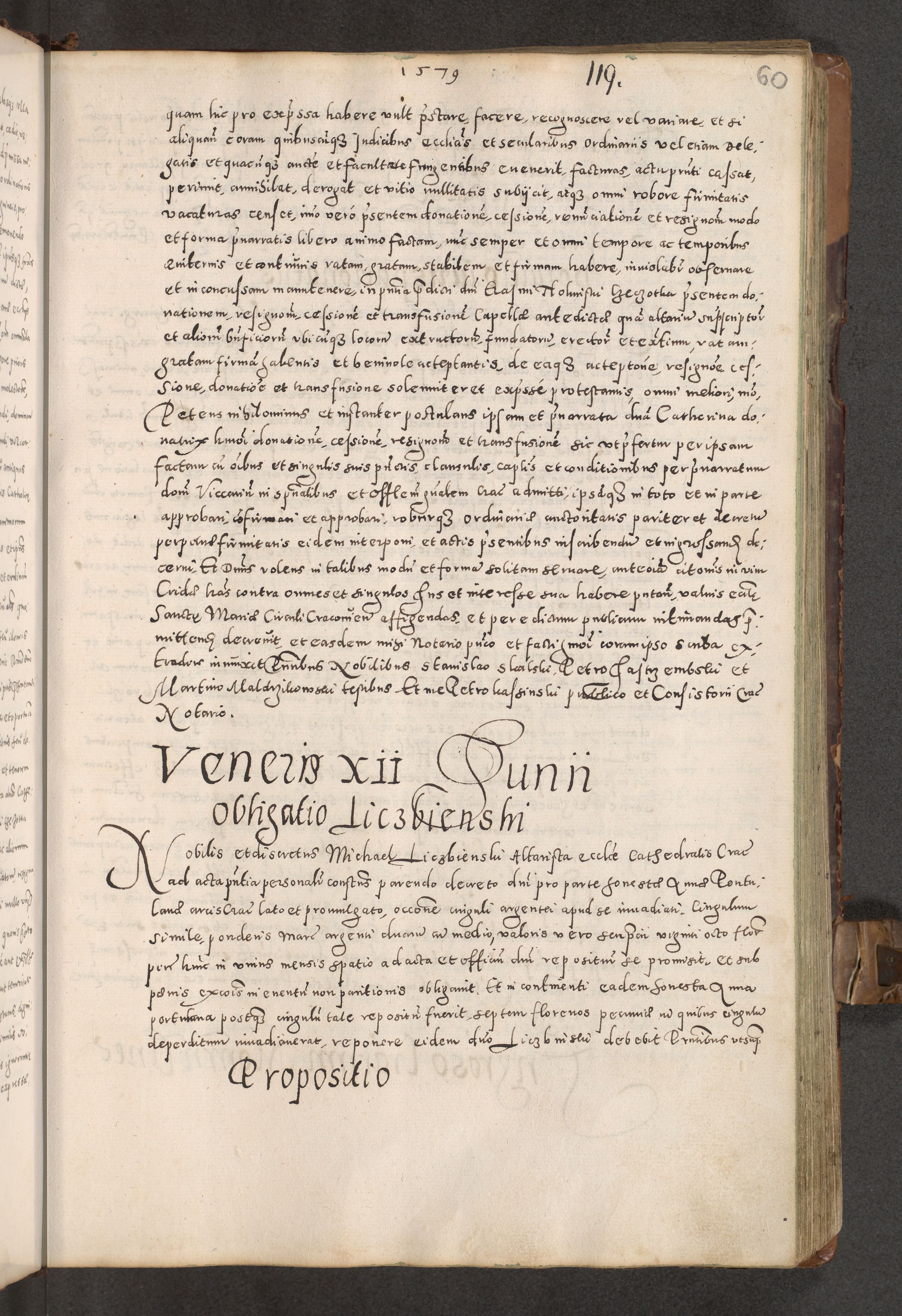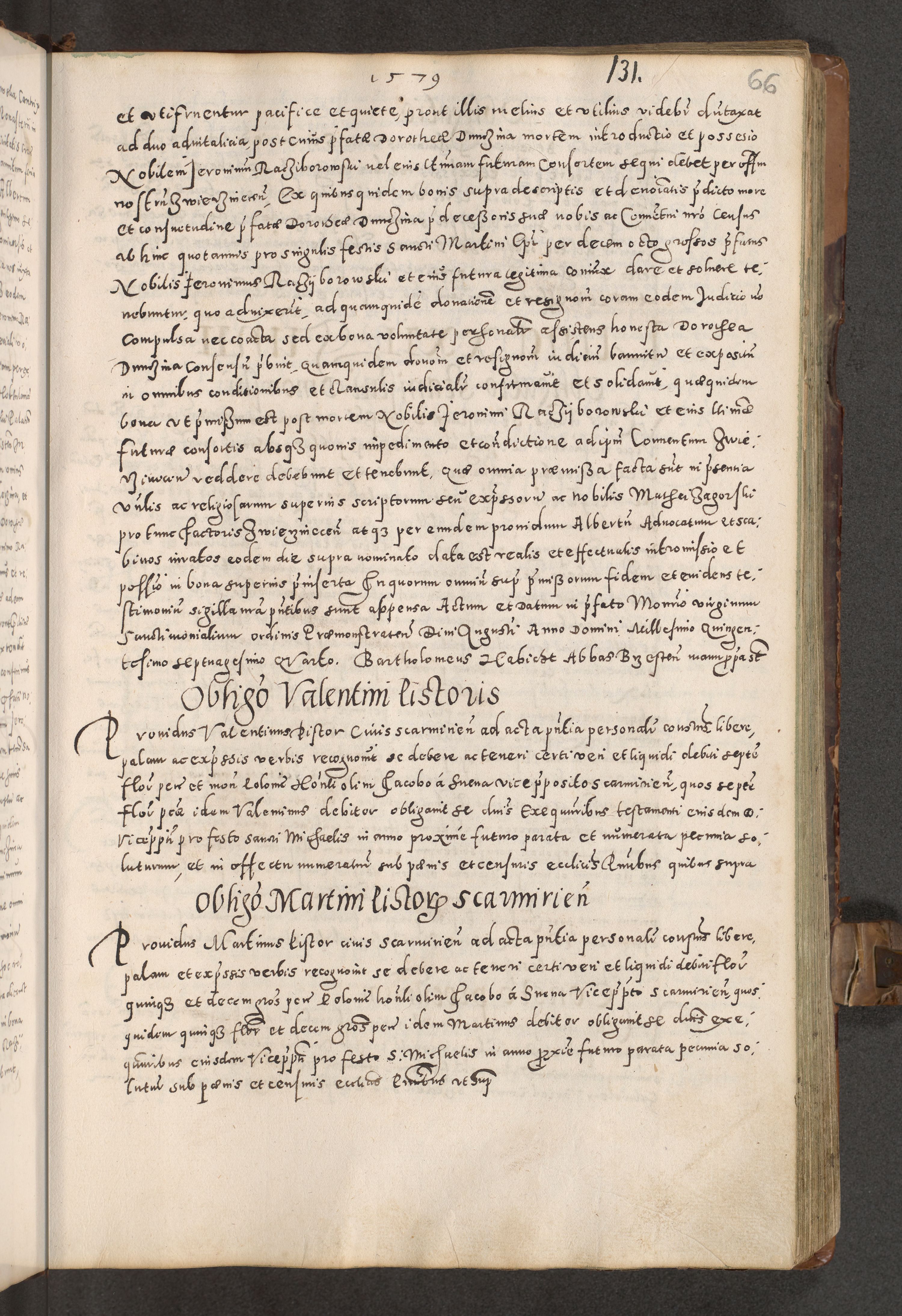 Acta actorum causarum tam diffinitivarum quam interloquutoriarum sententiarum decretorum obligationum quietatorum constuorum pro reverendum coram Reverendo Domino Alberto Nininski Custode Sandecensis Canonico et Archipresbitero Viccarioque in Spiritualibus ac Officiali Generali Cracoviensis ad Annum Domini Millesimum Qumgentesimum Septuagentesimum Nonum cuius Judictio septima Pontificat SS. nostri Domini Gregory pp. tredecimi Anno septimo inchoantur faliciter