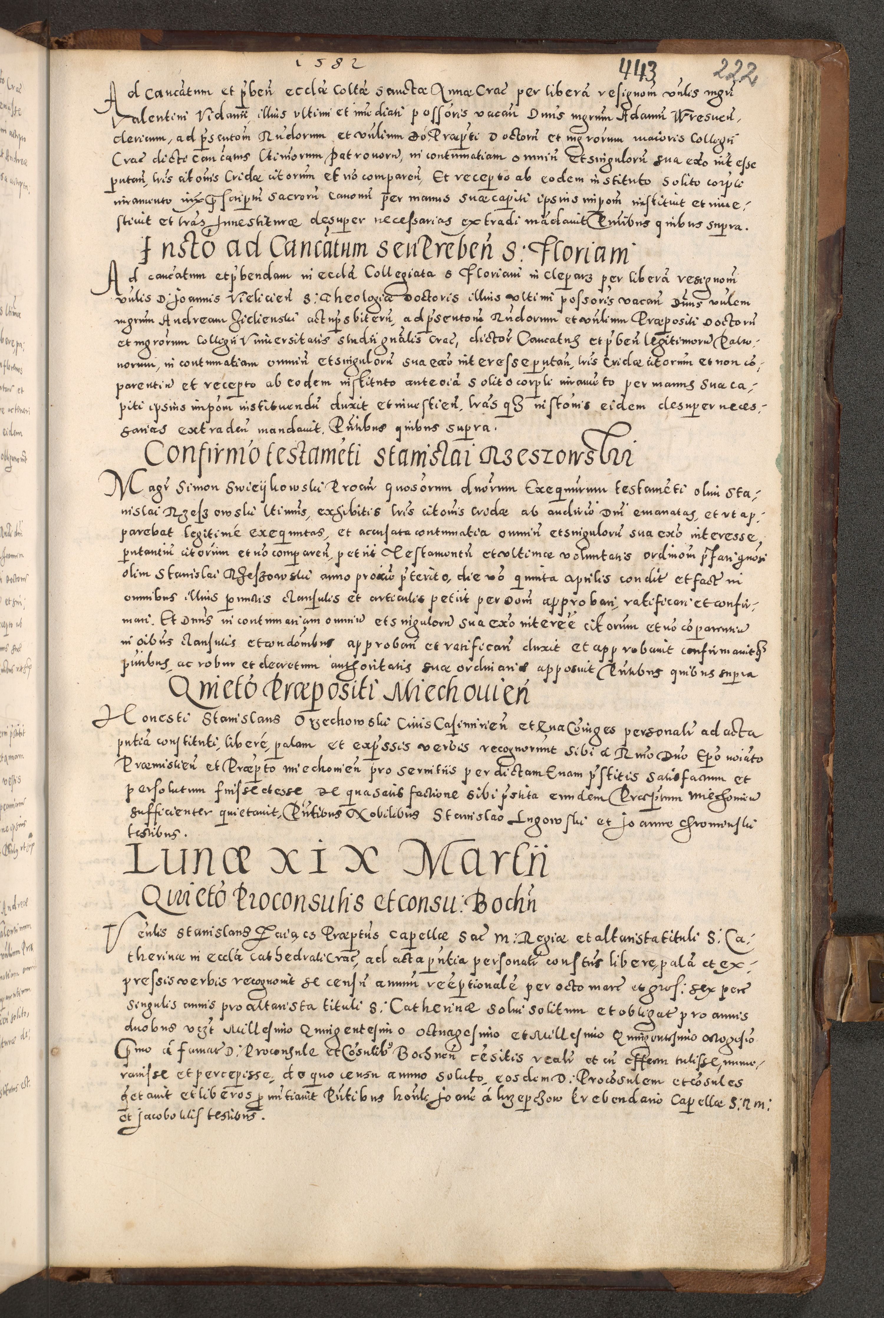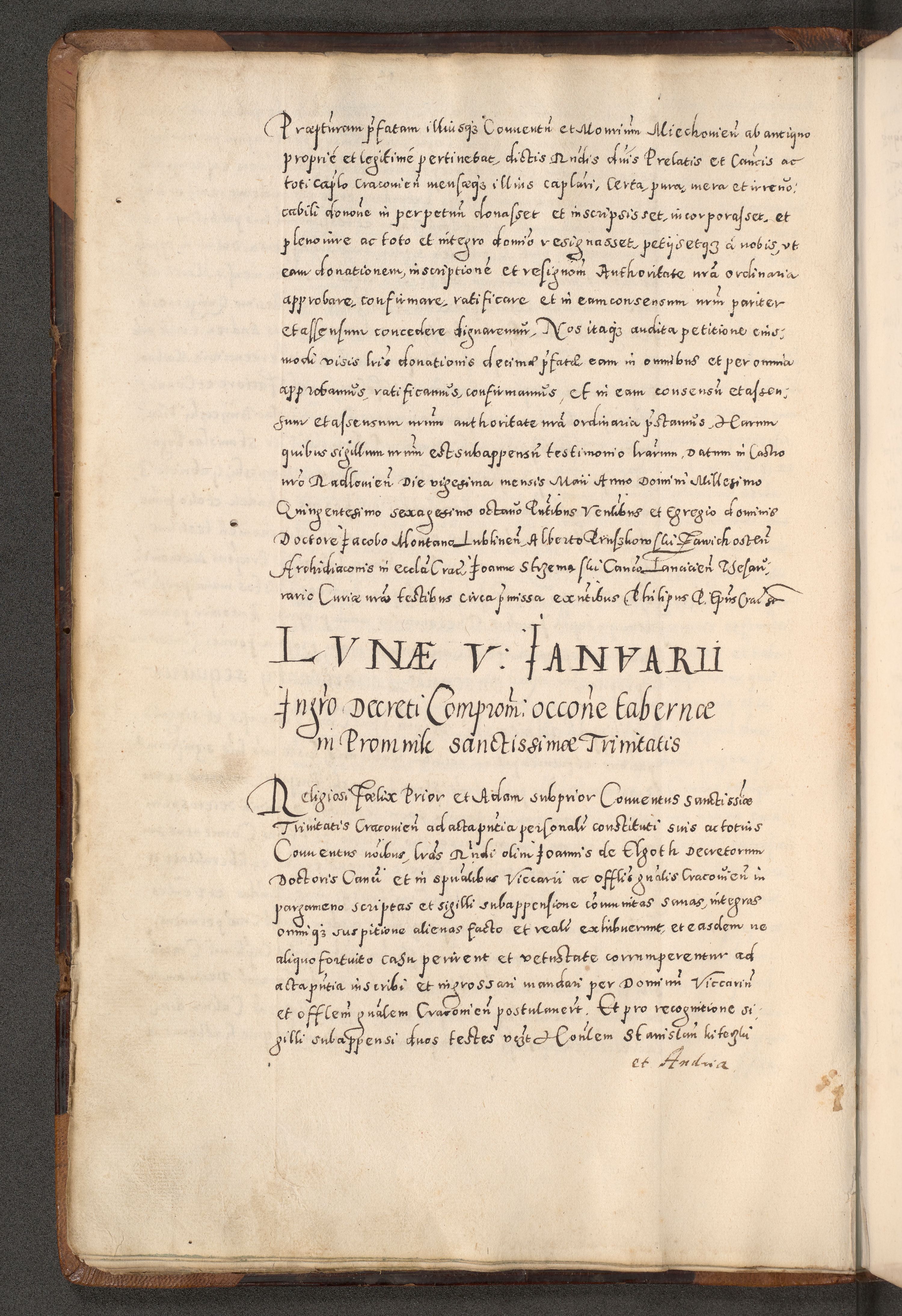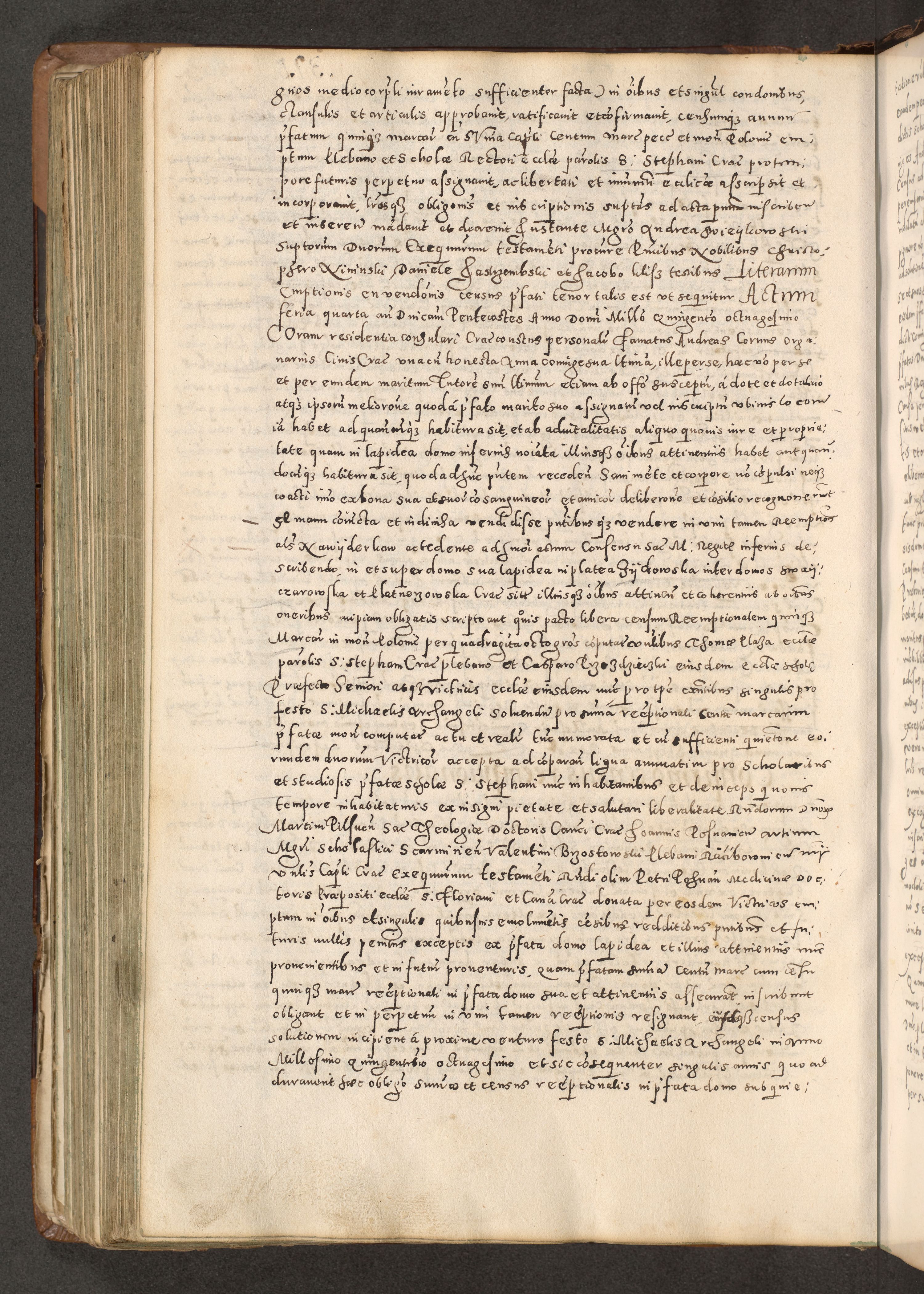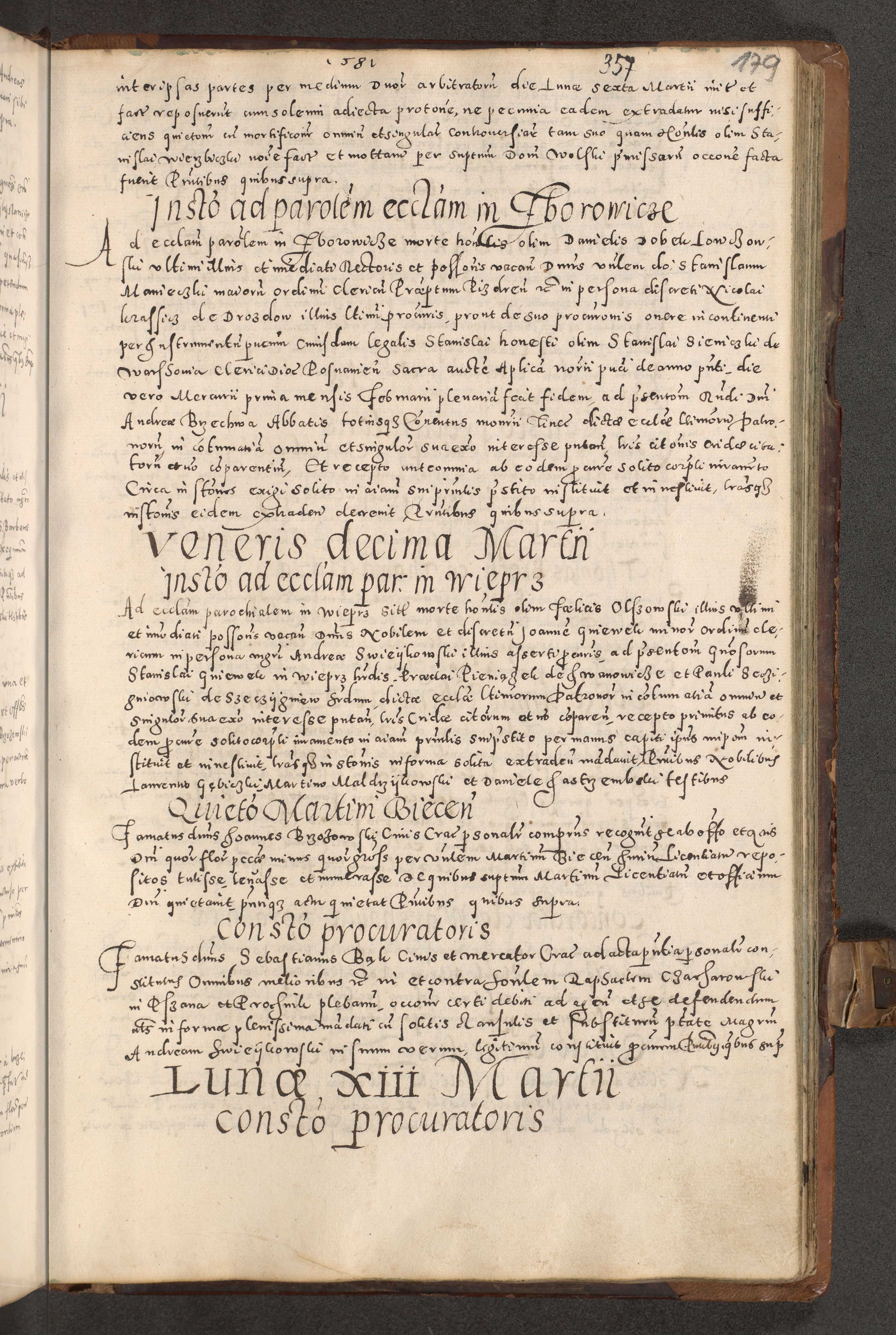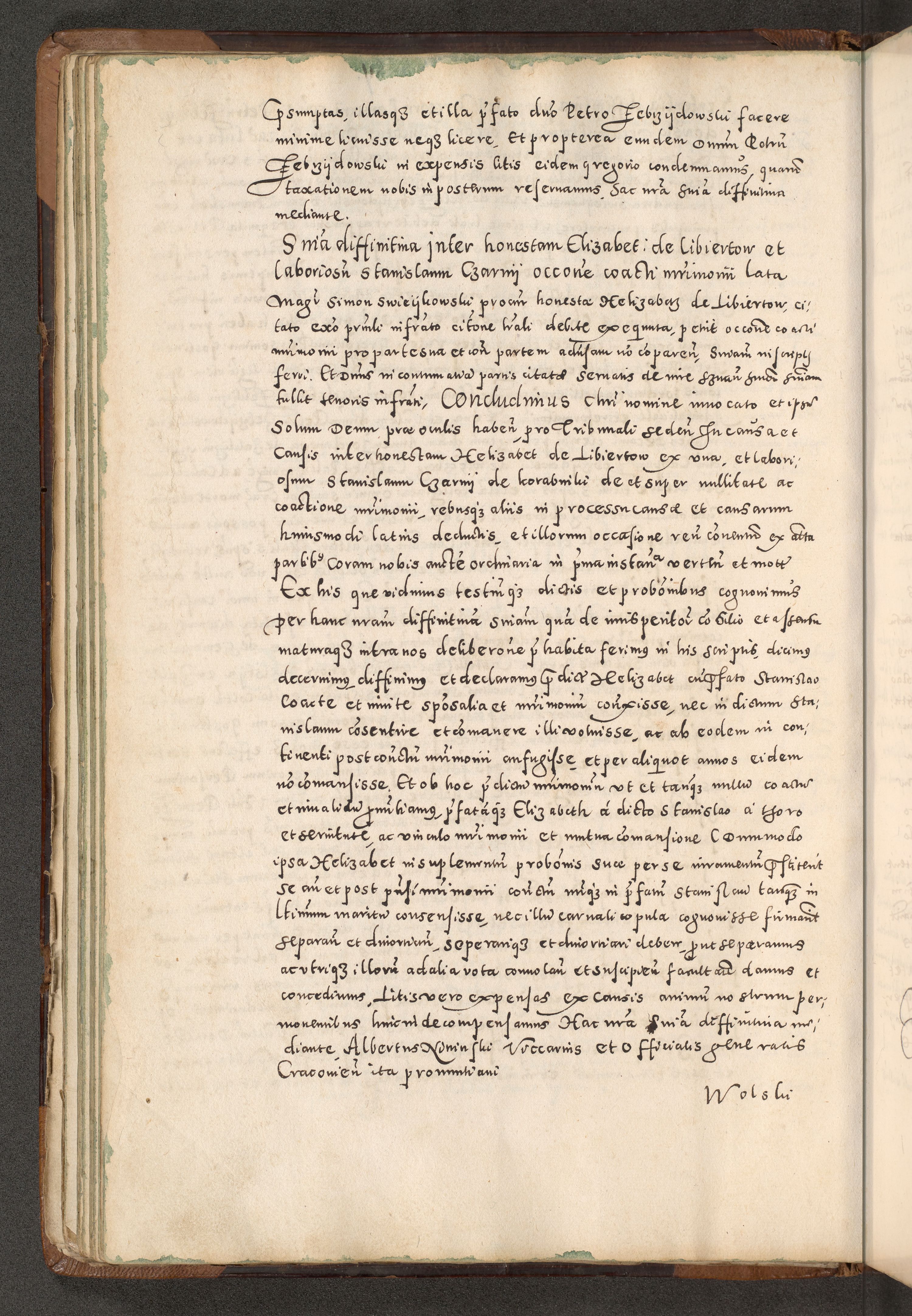 Acta actorum causarum tam diffinitivarum quam interloquutoriarum sententiarum decretorum obligationum quietatorum constuorum pro reverendum coram Reverendo Domino Alberto Nininski Custode Sandecensis Canonico et Archipresbitero Viccarioque in Spiritualibus ac Officiali Generali Cracoviensis ad Annum Domini Millesimum Qumgentesimum Septuagentesimum Nonum cuius Judictio septima Pontificat SS. nostri Domini Gregory pp. tredecimi Anno septimo inchoantur faliciter
