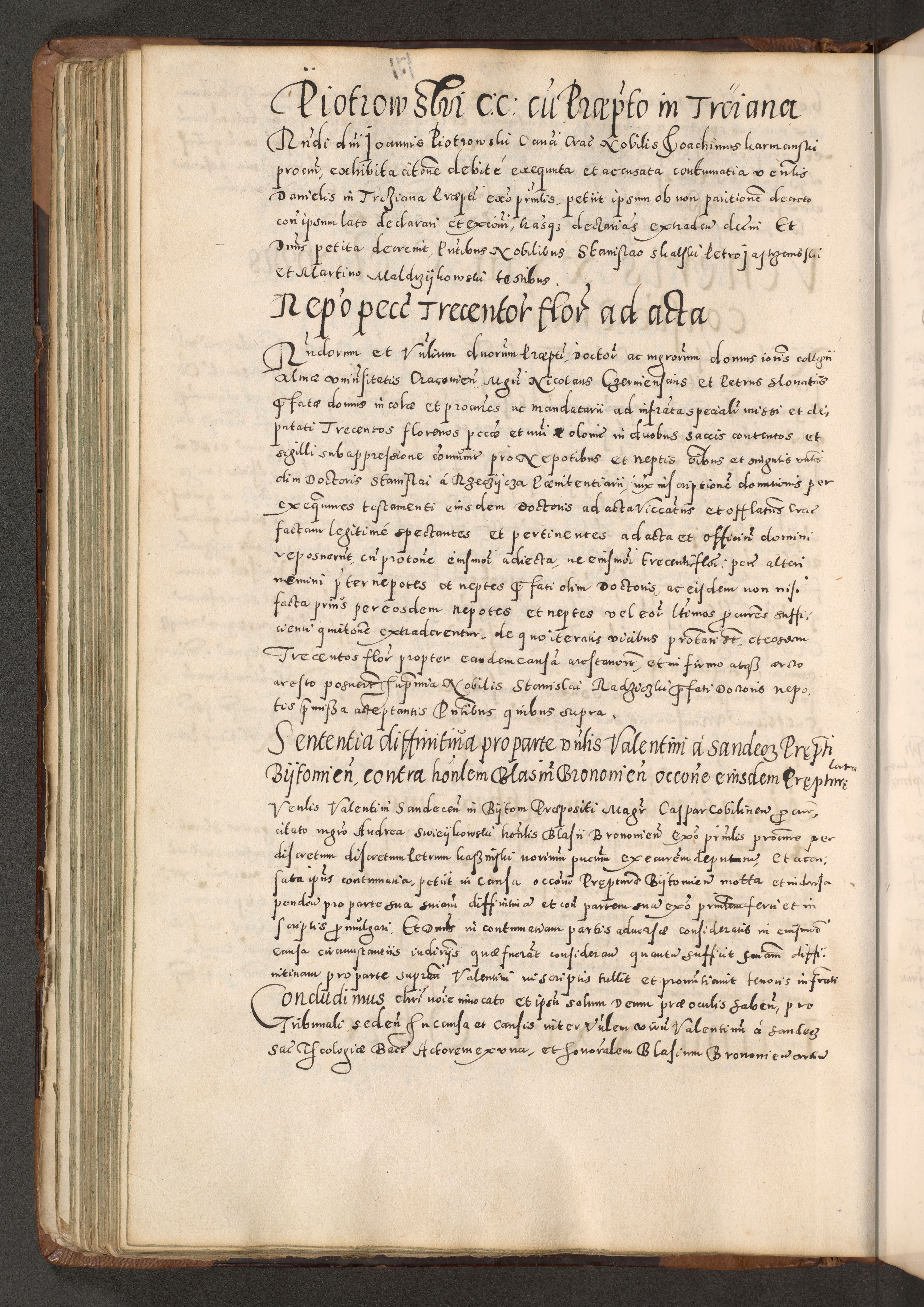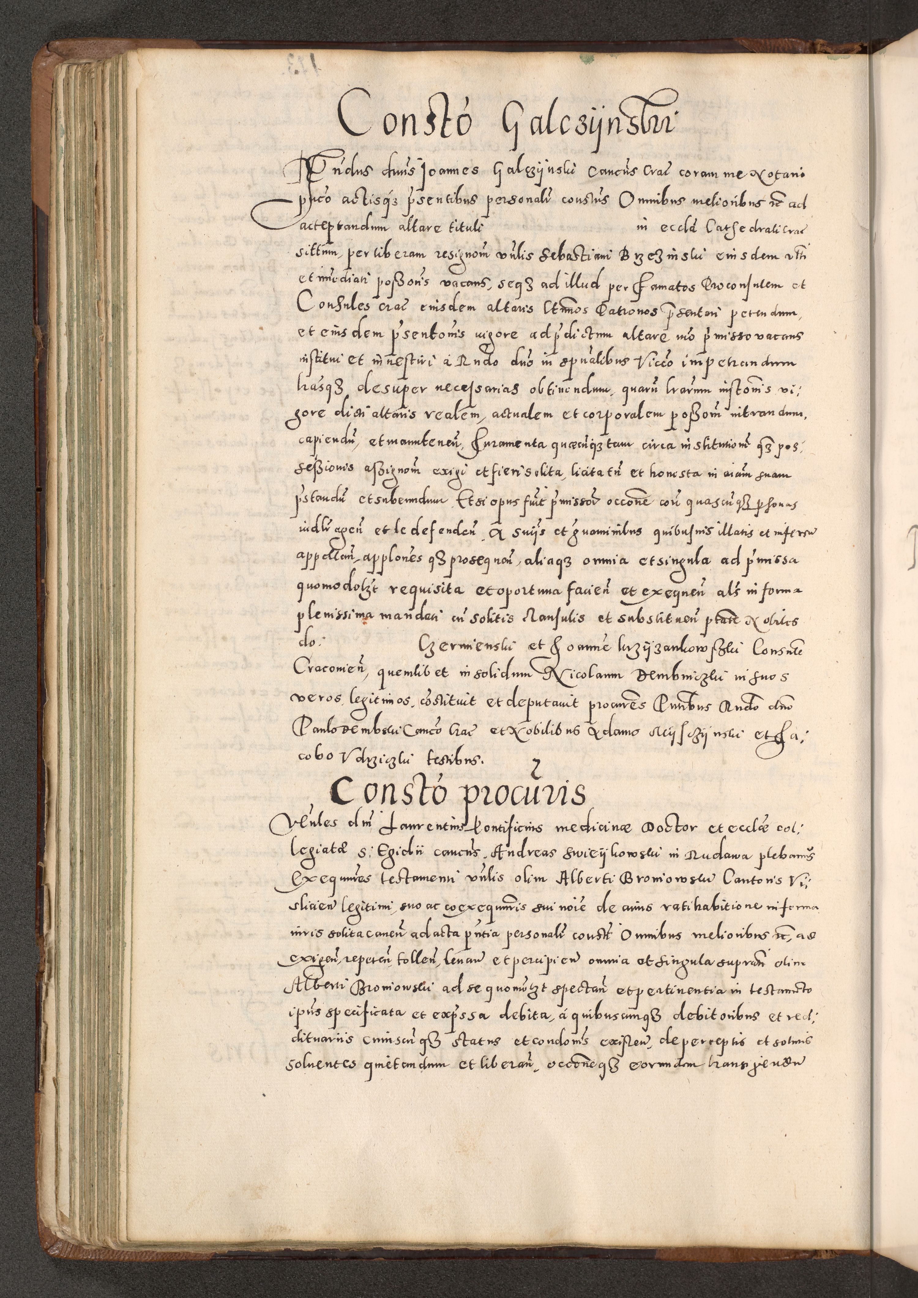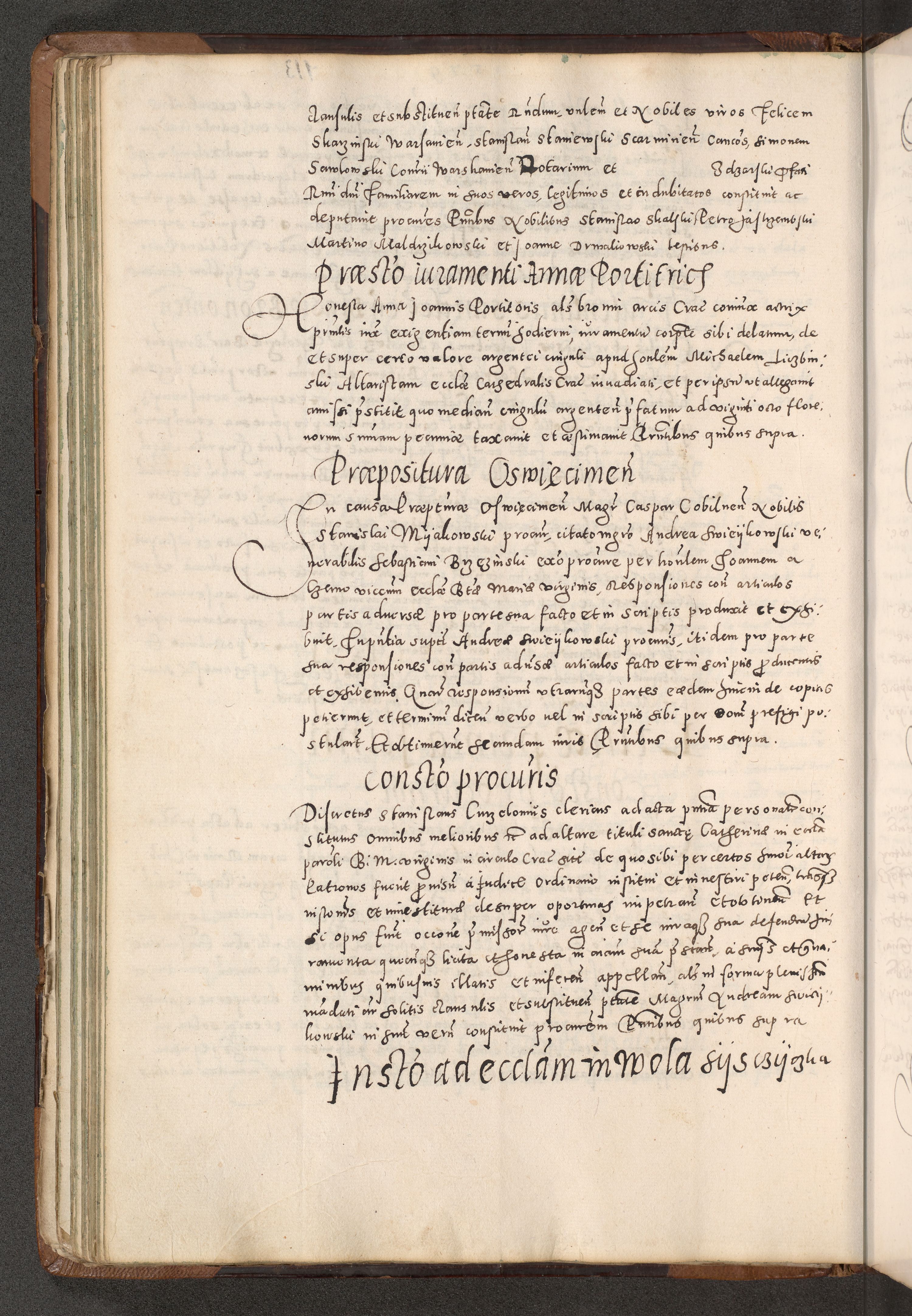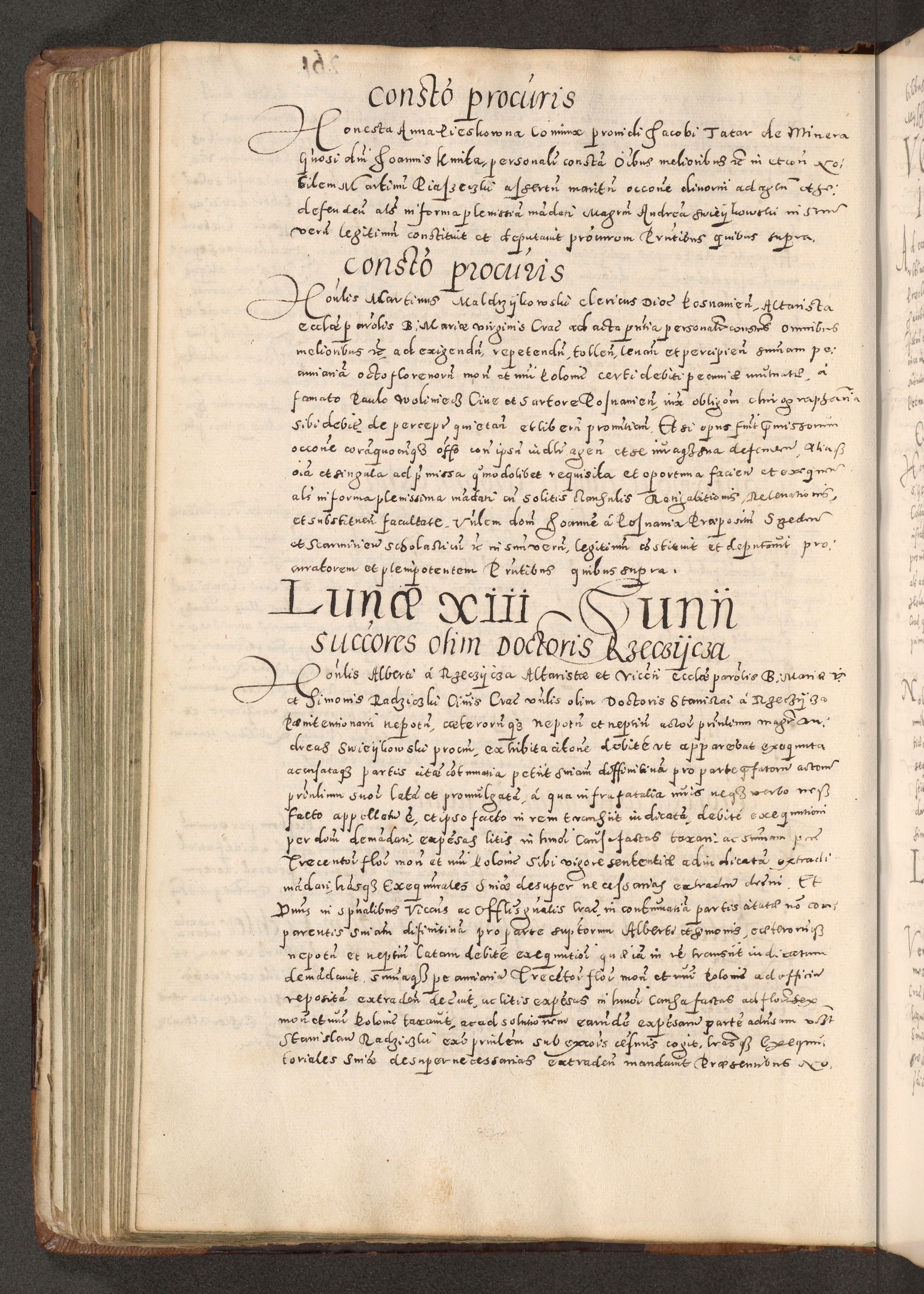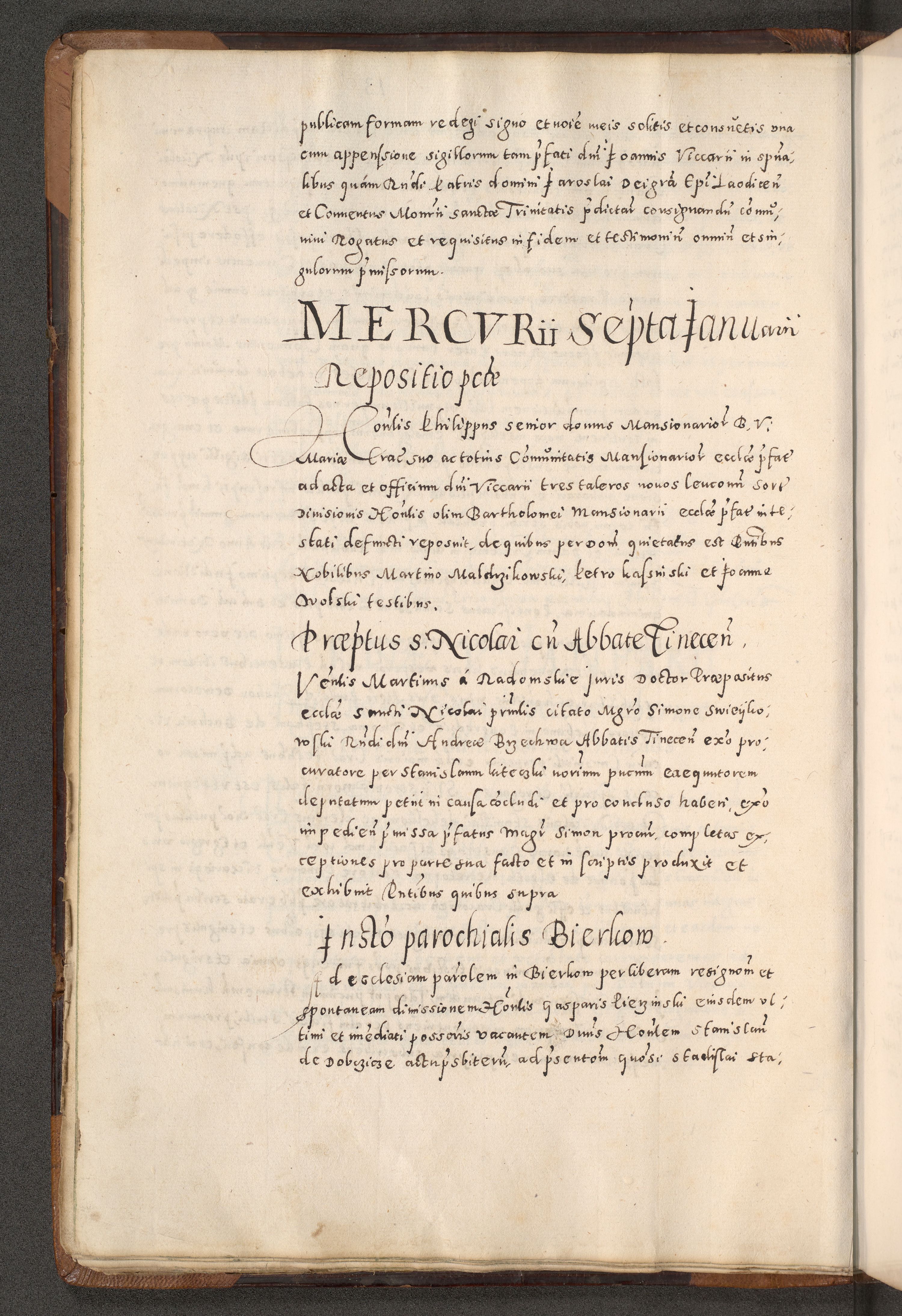 Acta actorum causarum tam diffinitivarum quam interloquutoriarum sententiarum decretorum obligationum quietatorum constuorum pro reverendum coram Reverendo Domino Alberto Nininski Custode Sandecensis Canonico et Archipresbitero Viccarioque in Spiritualibus ac Officiali Generali Cracoviensis ad Annum Domini Millesimum Qumgentesimum Septuagentesimum Nonum cuius Judictio septima Pontificat SS. nostri Domini Gregory pp. tredecimi Anno septimo inchoantur faliciter