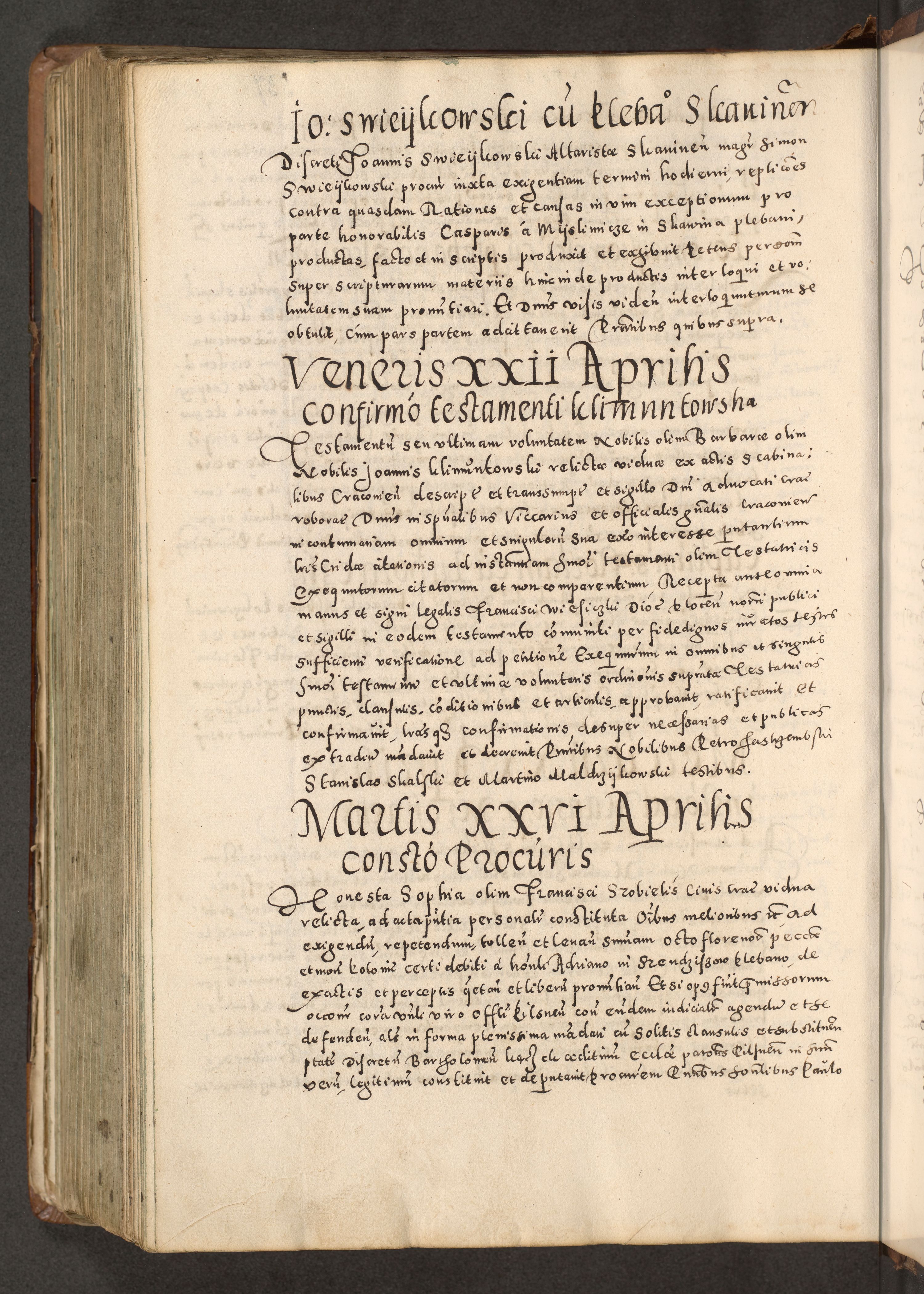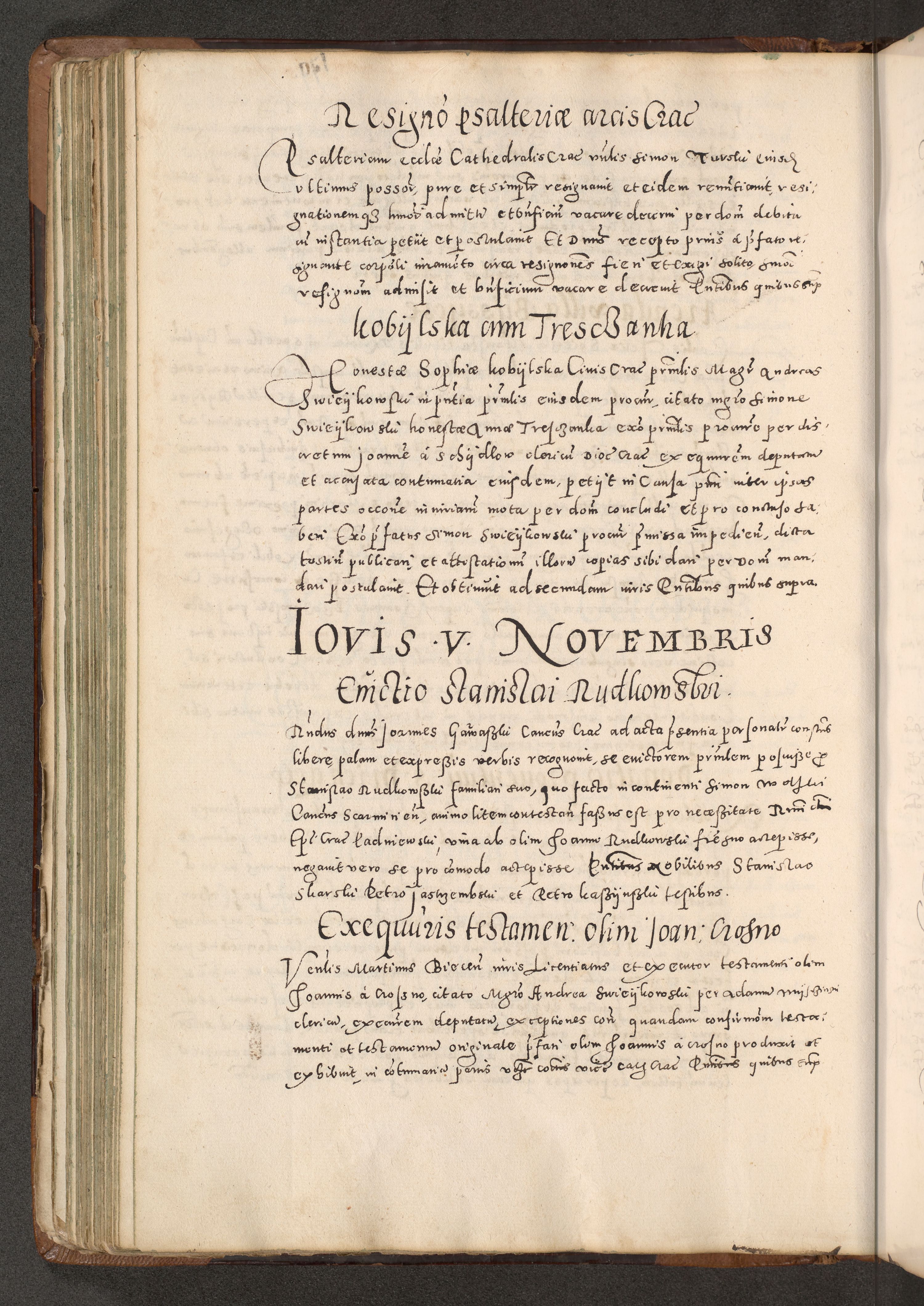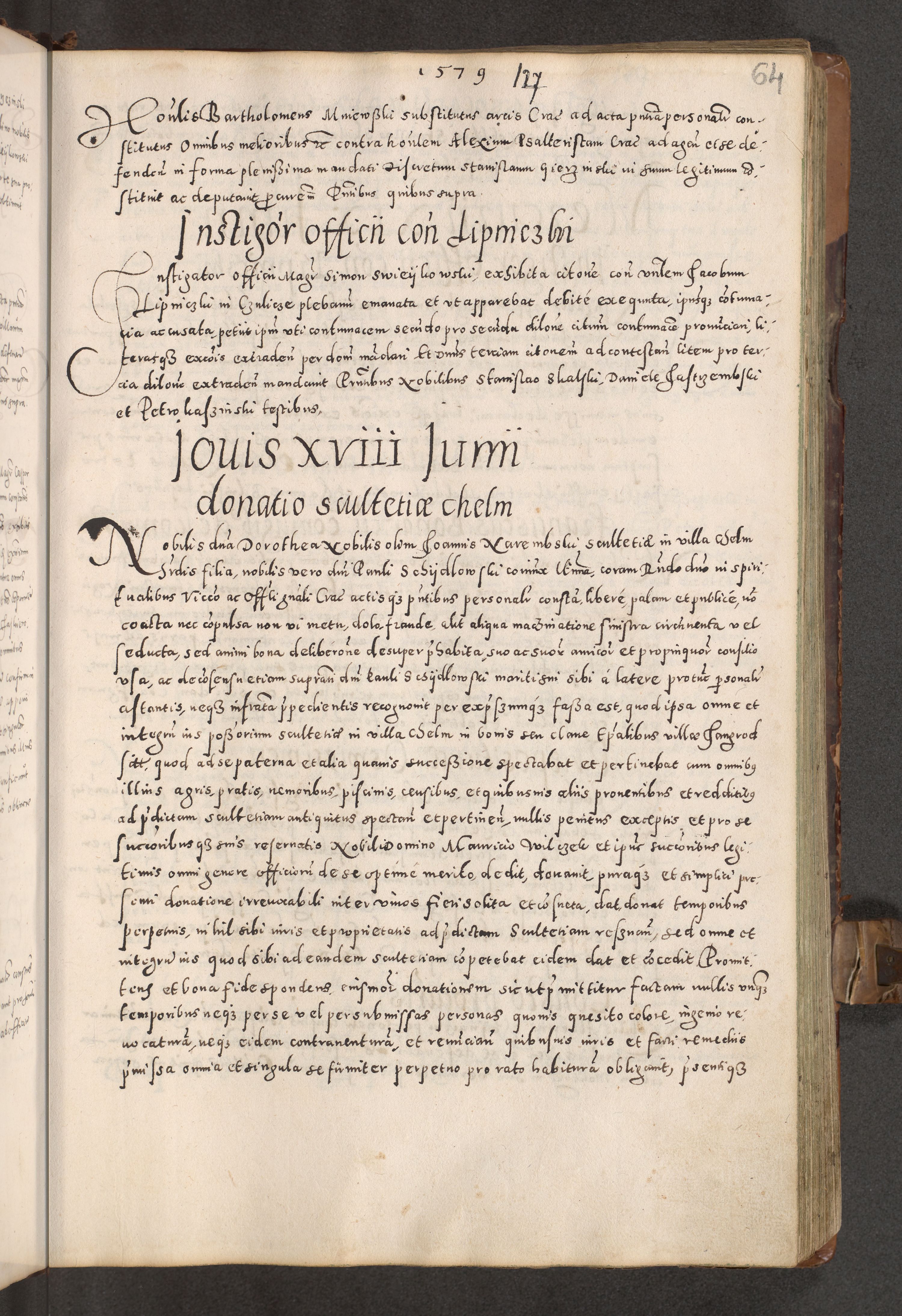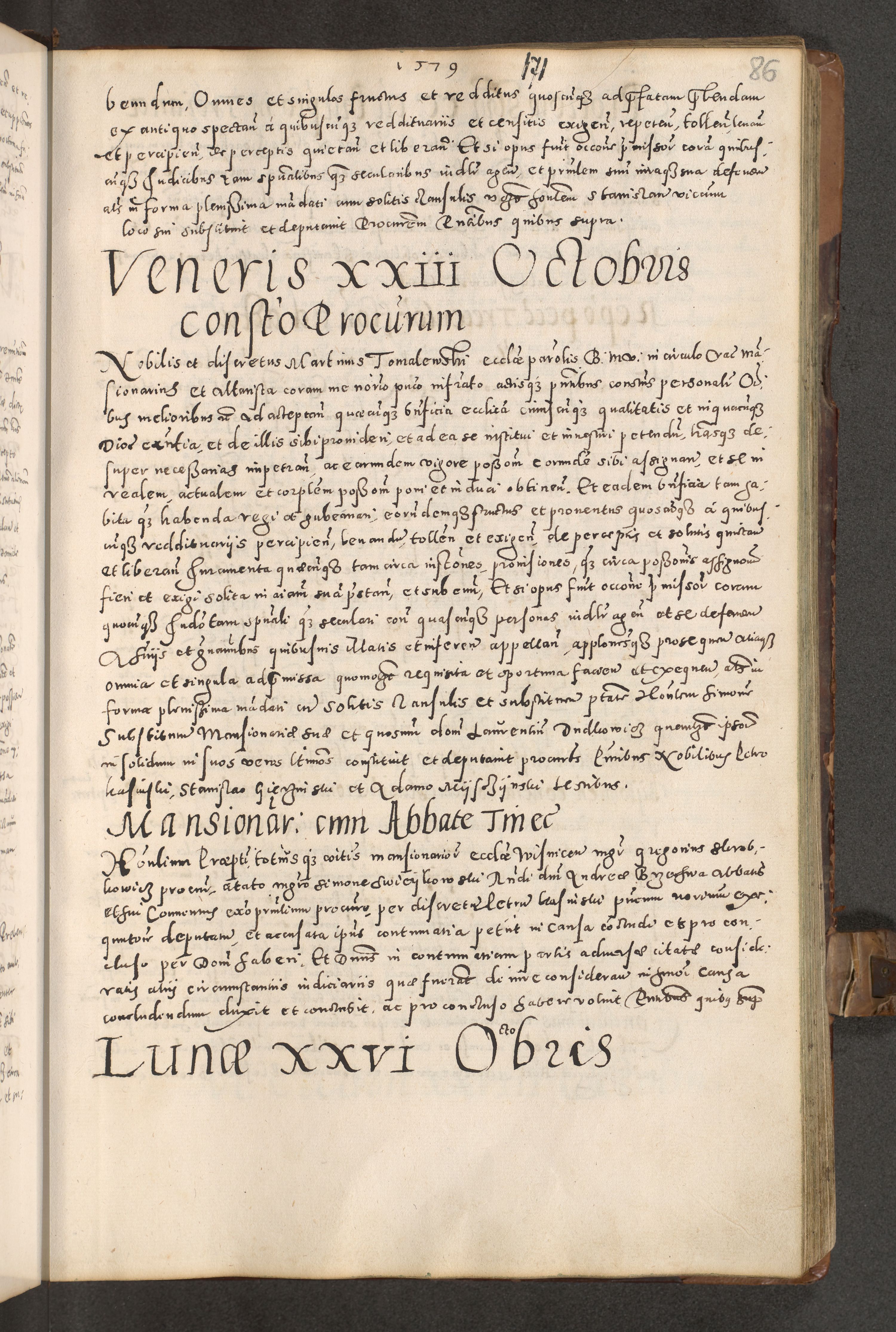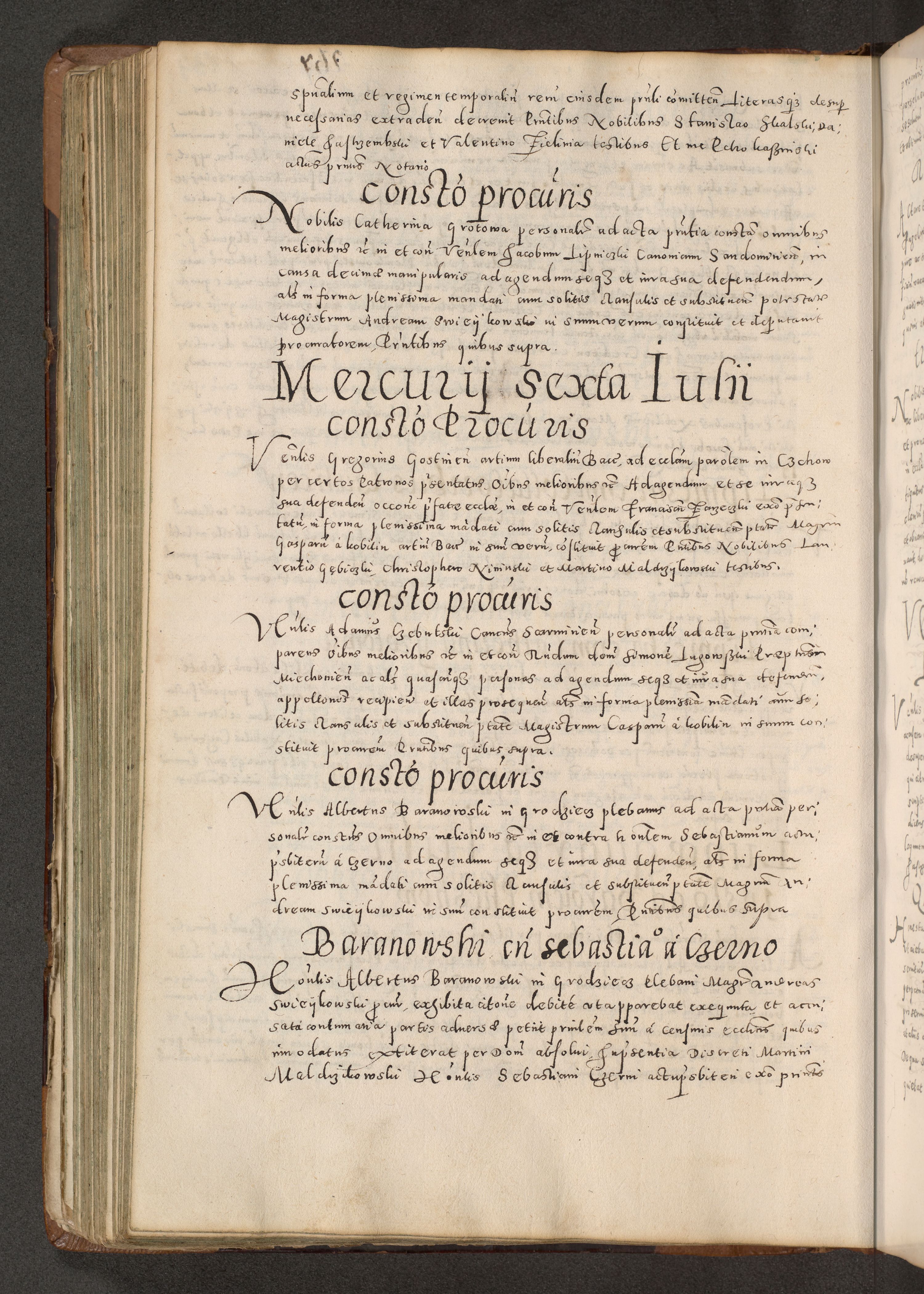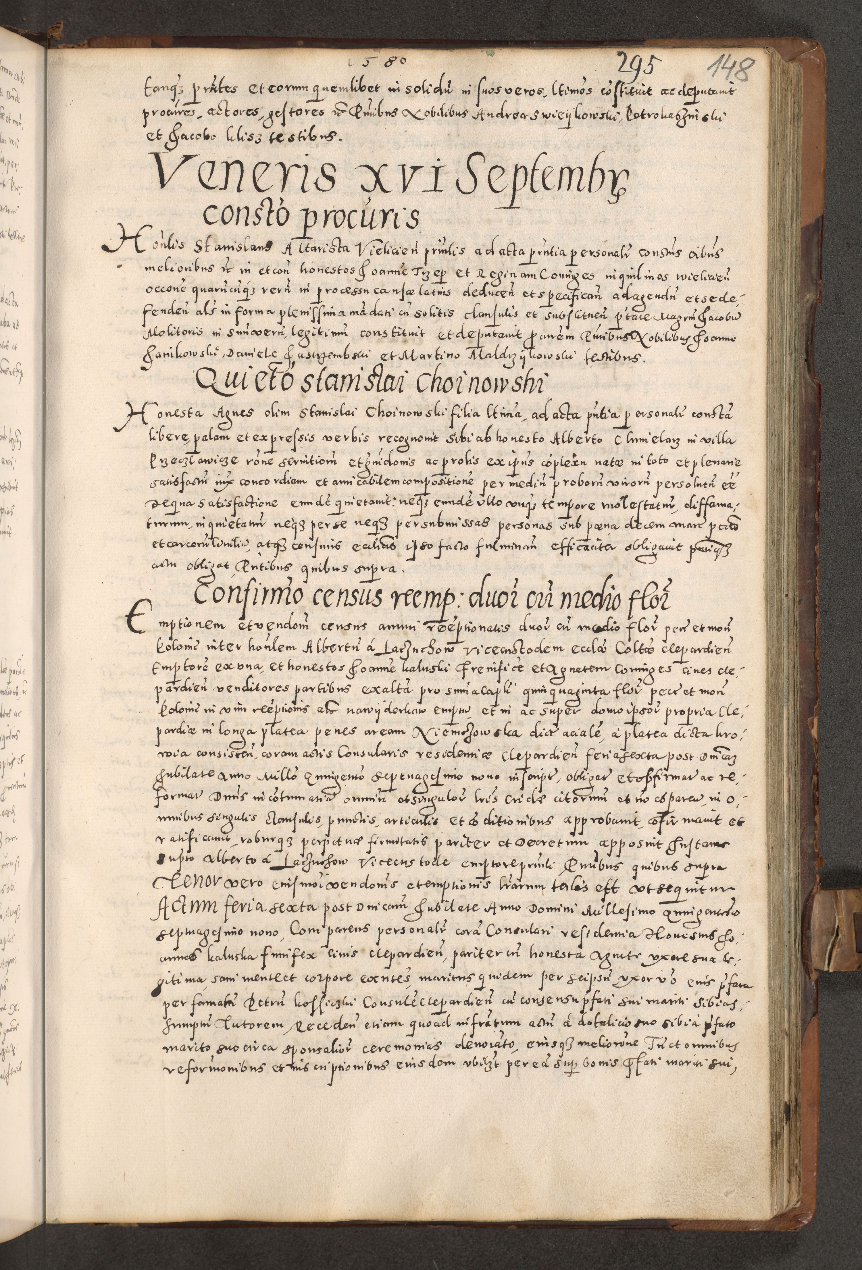 Acta actorum causarum tam diffinitivarum quam interloquutoriarum sententiarum decretorum obligationum quietatorum constuorum pro reverendum coram Reverendo Domino Alberto Nininski Custode Sandecensis Canonico et Archipresbitero Viccarioque in Spiritualibus ac Officiali Generali Cracoviensis ad Annum Domini Millesimum Qumgentesimum Septuagentesimum Nonum cuius Judictio septima Pontificat SS. nostri Domini Gregory pp. tredecimi Anno septimo inchoantur faliciter