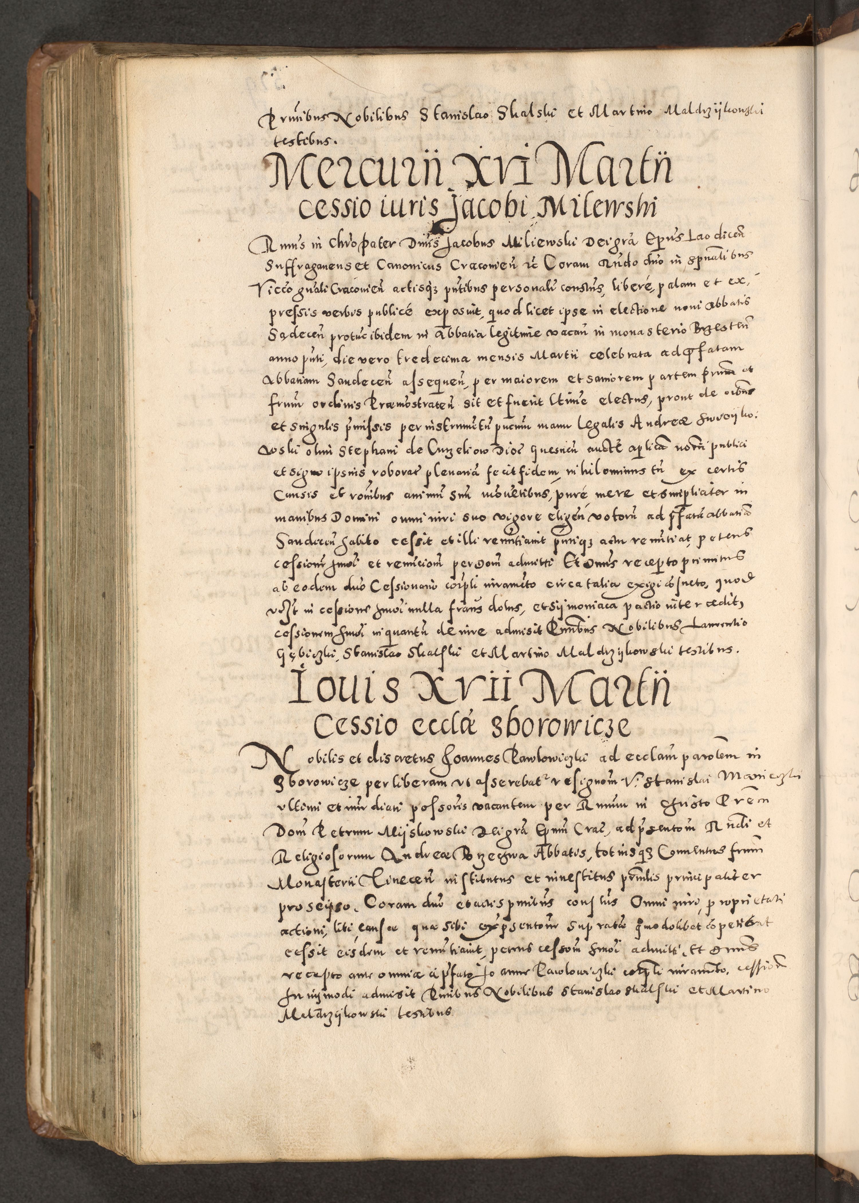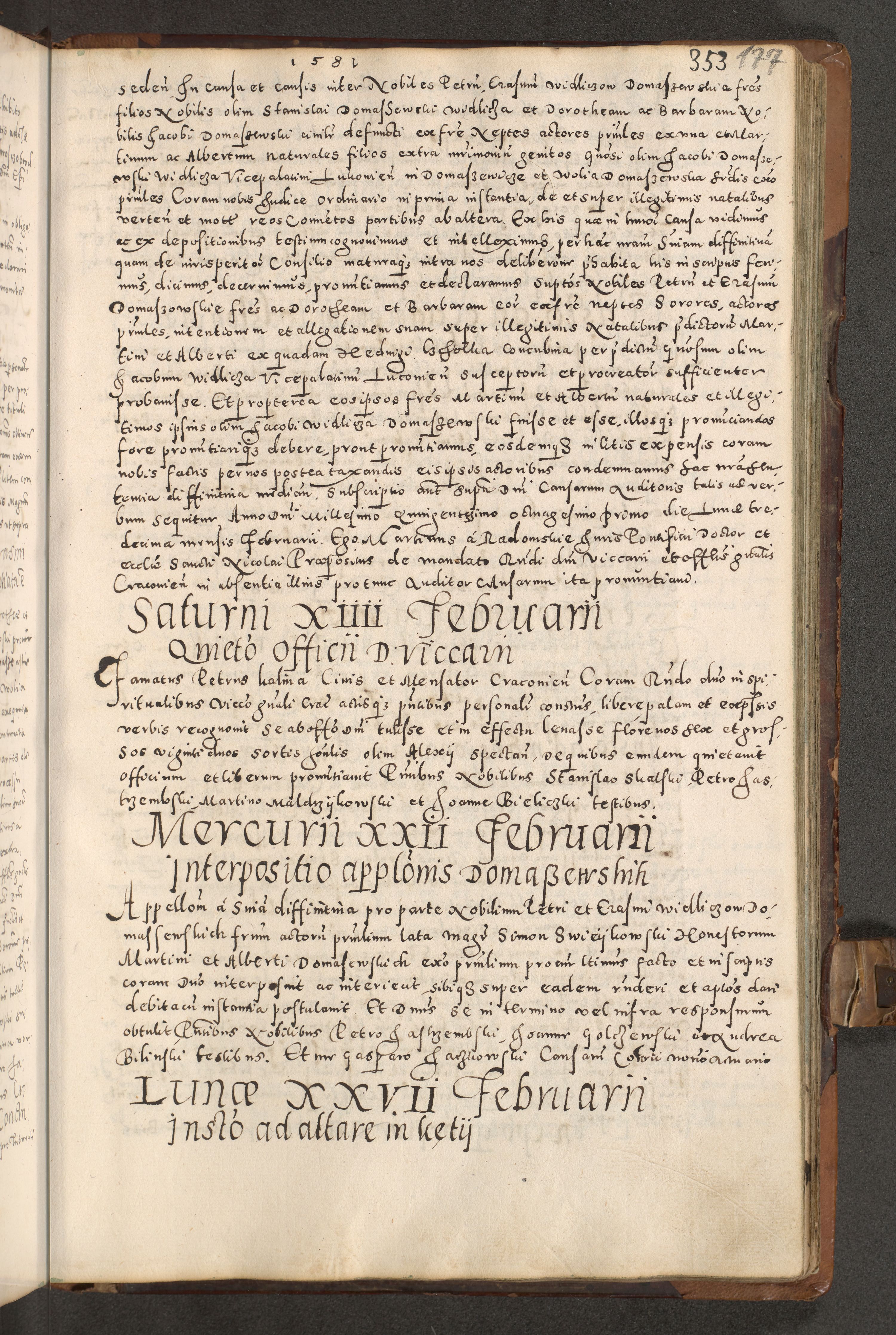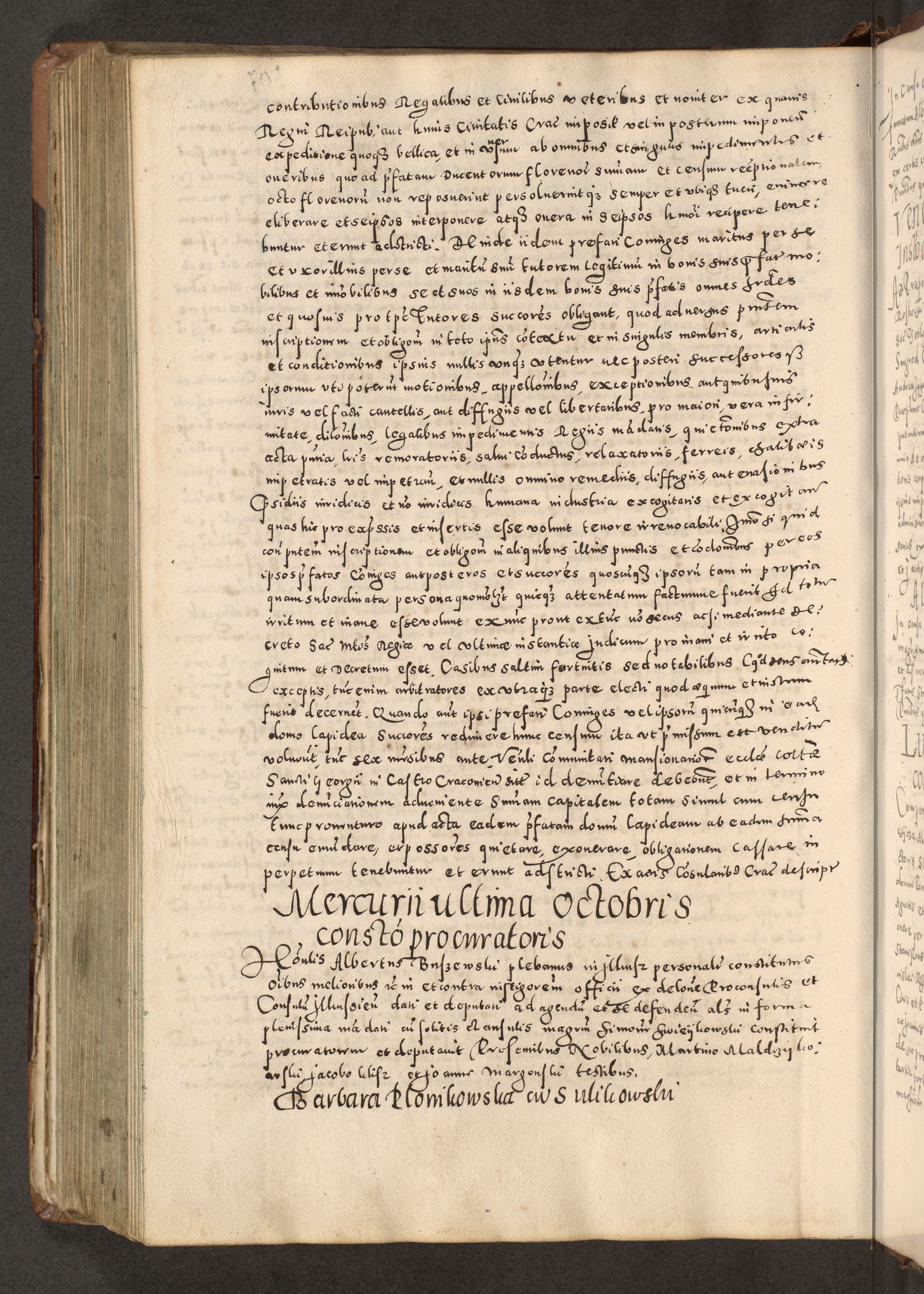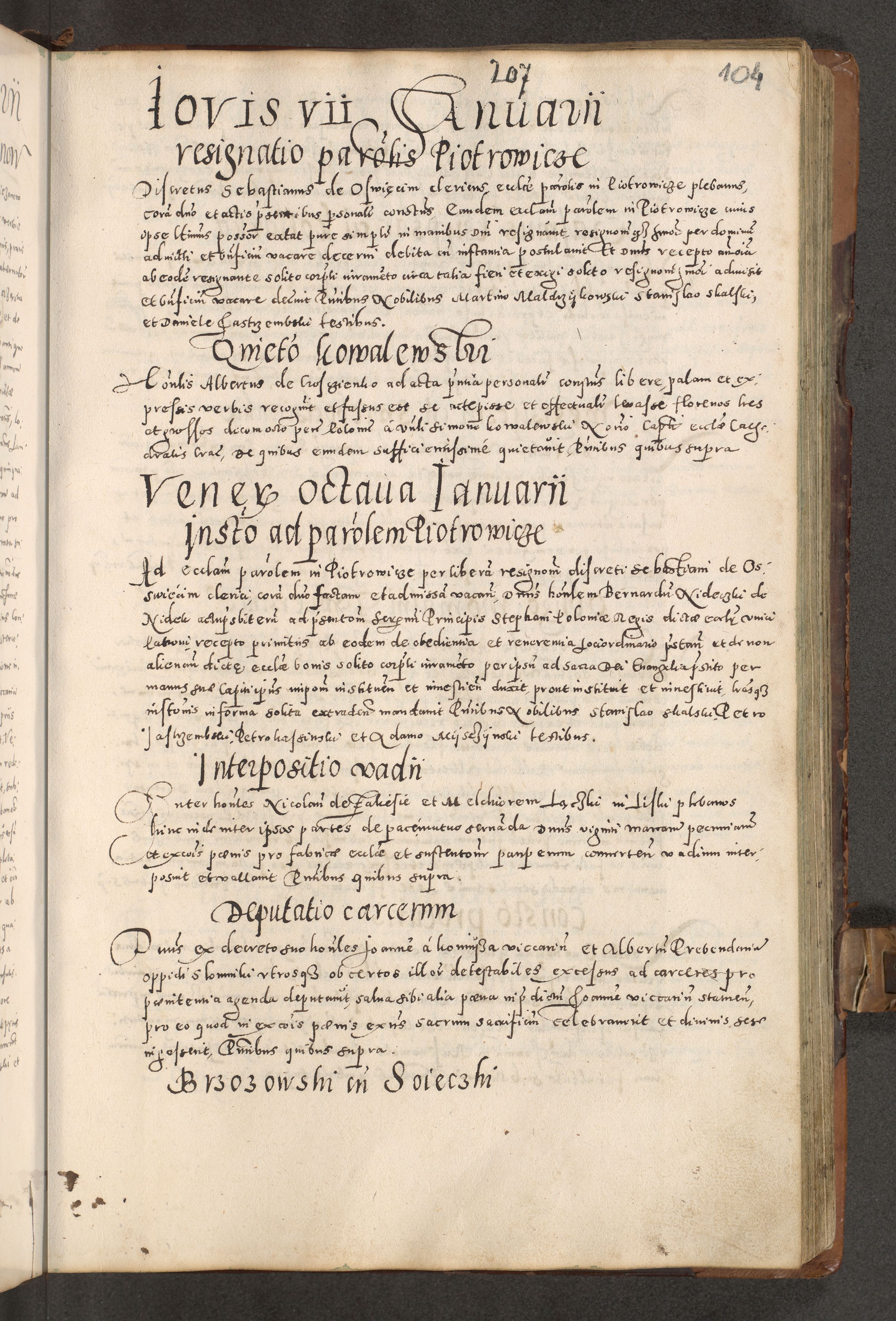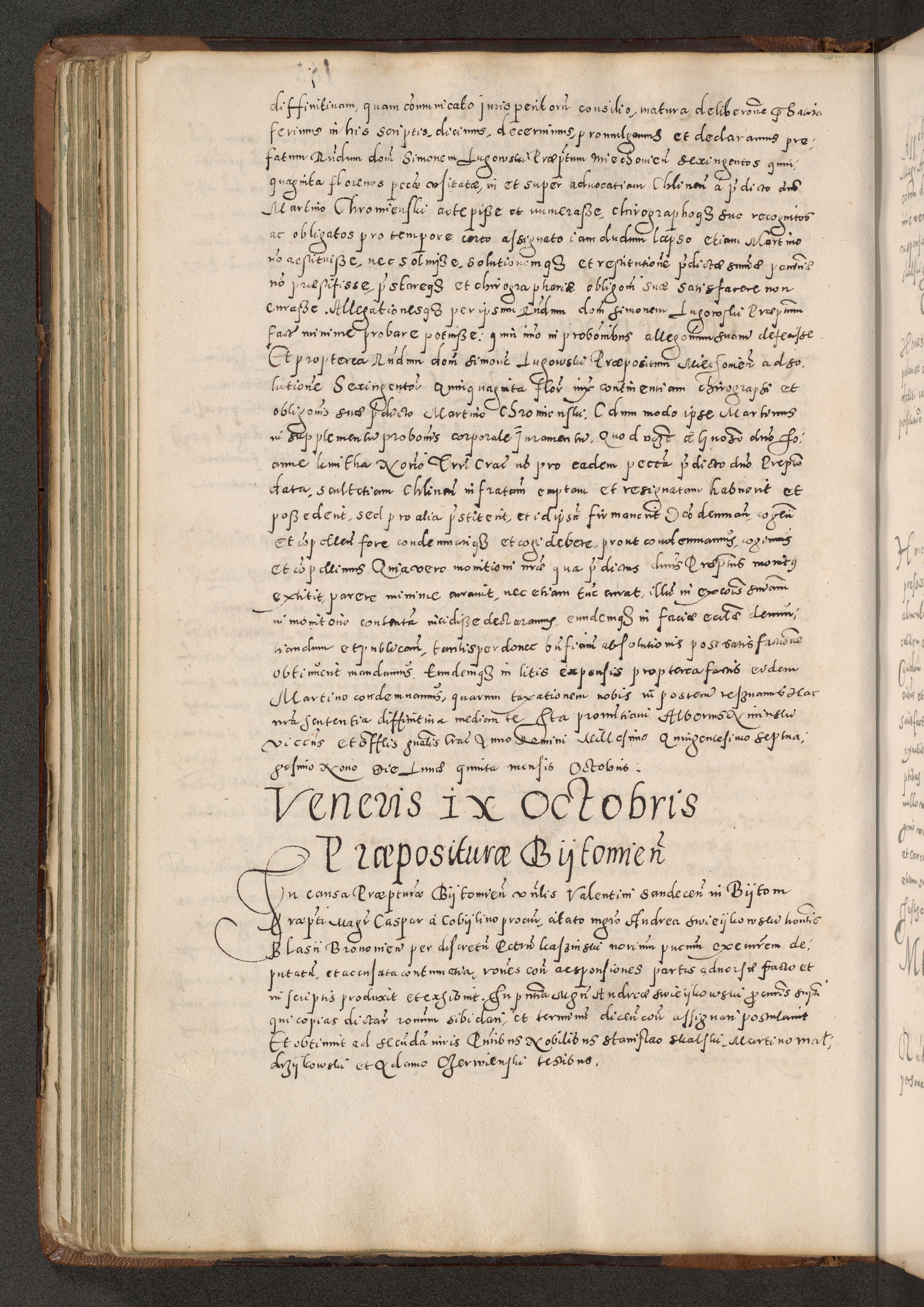 Acta actorum causarum tam diffinitivarum quam interloquutoriarum sententiarum decretorum obligationum quietatorum constuorum pro reverendum coram Reverendo Domino Alberto Nininski Custode Sandecensis Canonico et Archipresbitero Viccarioque in Spiritualibus ac Officiali Generali Cracoviensis ad Annum Domini Millesimum Qumgentesimum Septuagentesimum Nonum cuius Judictio septima Pontificat SS. nostri Domini Gregory pp. tredecimi Anno septimo inchoantur faliciter