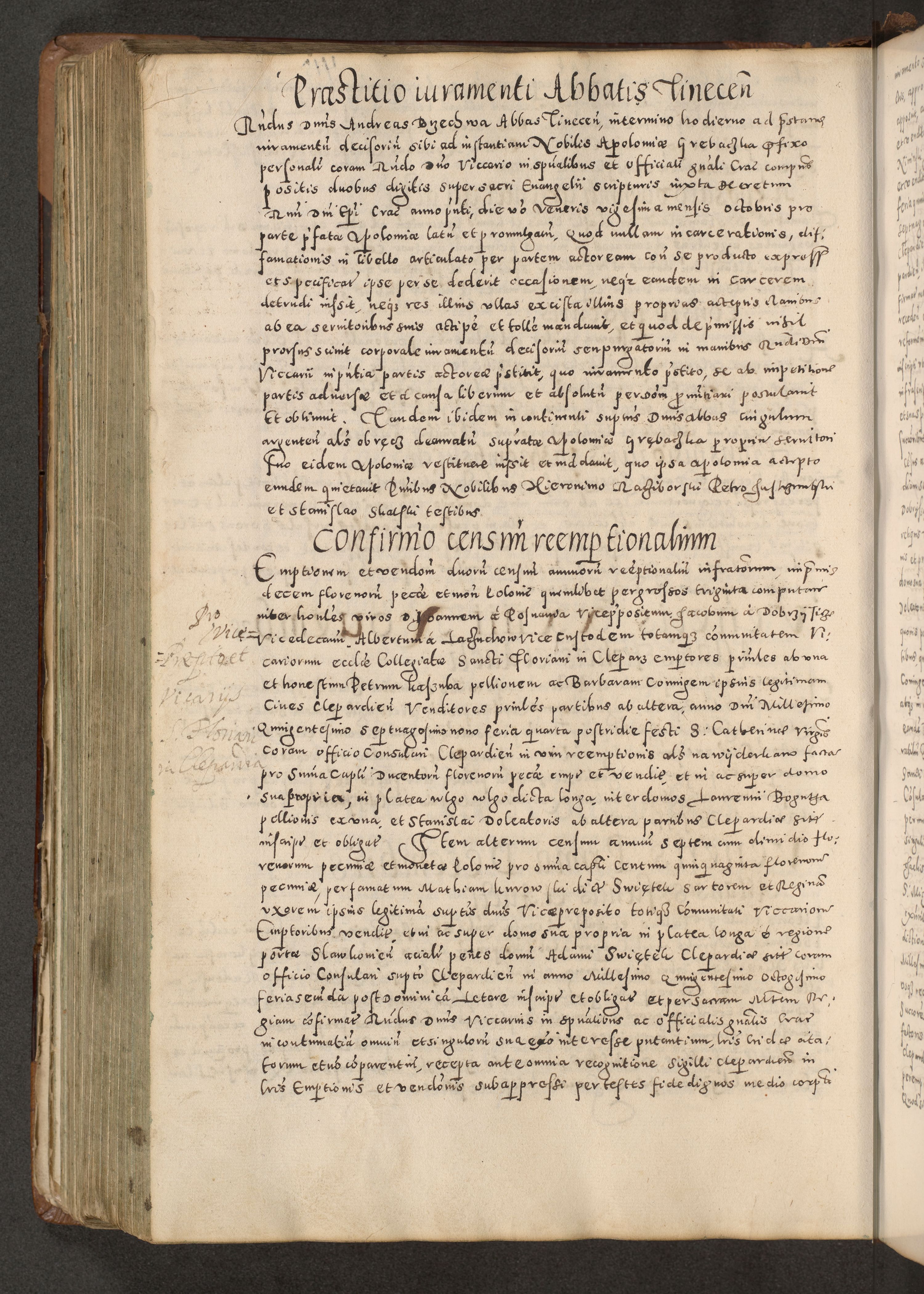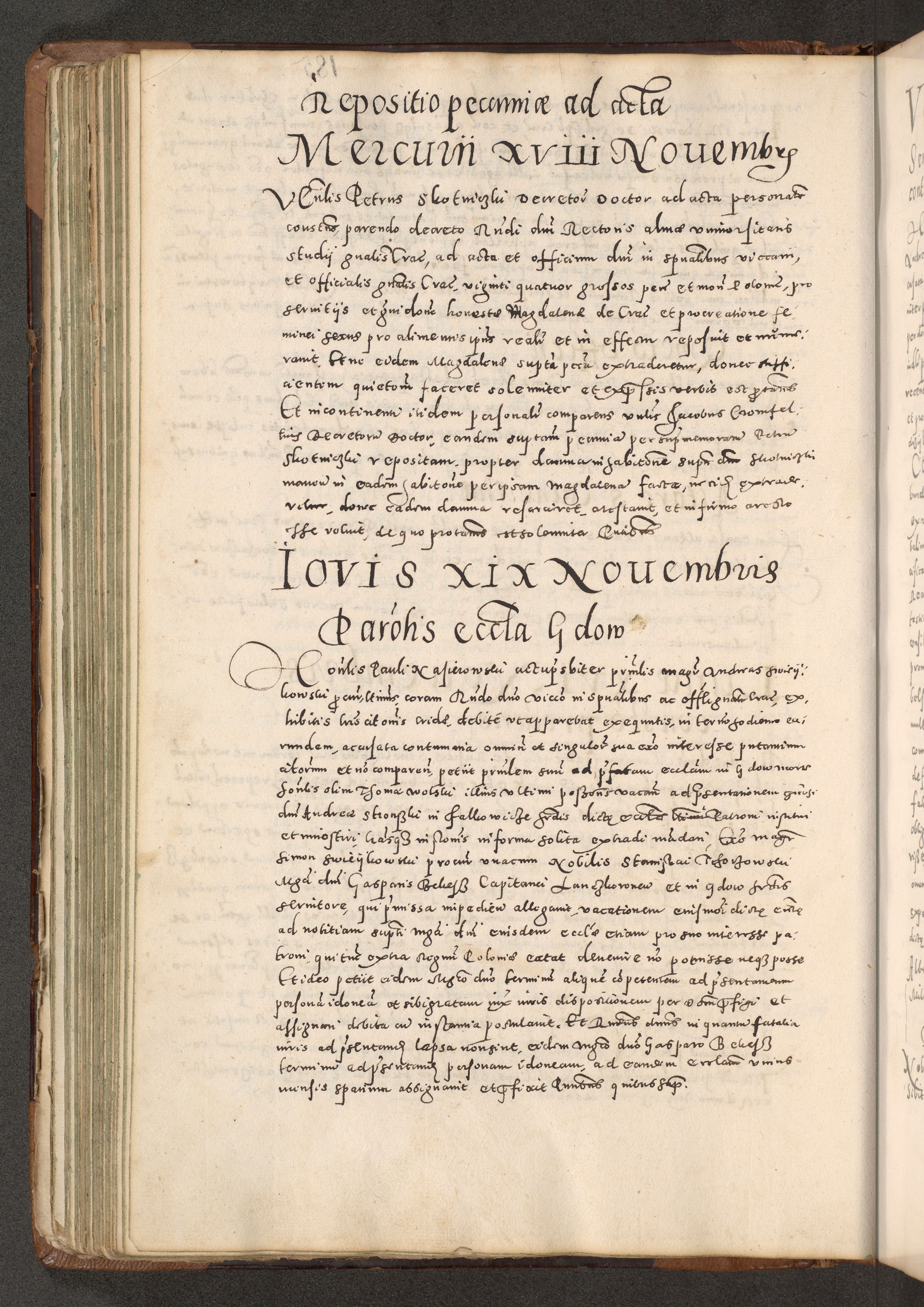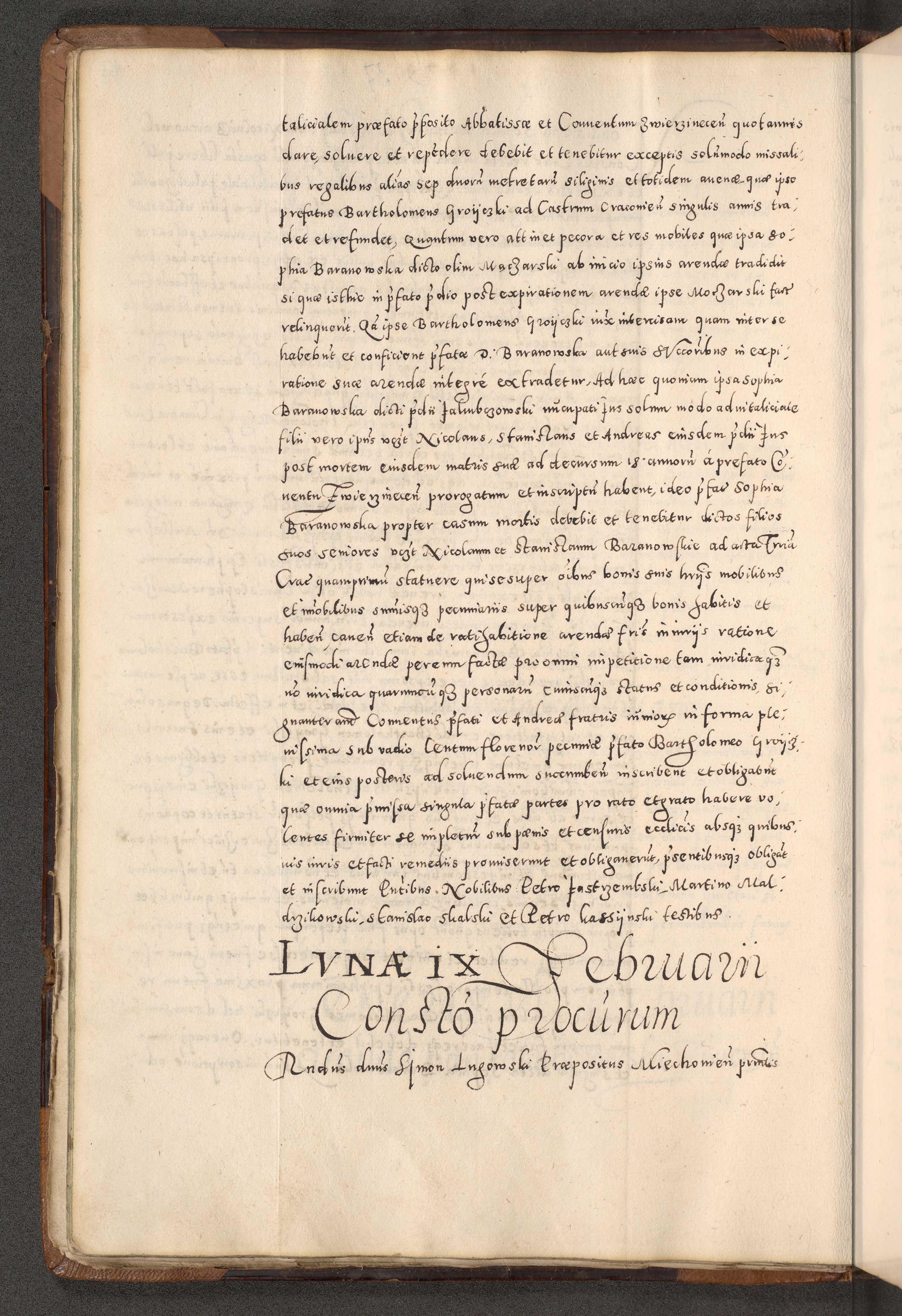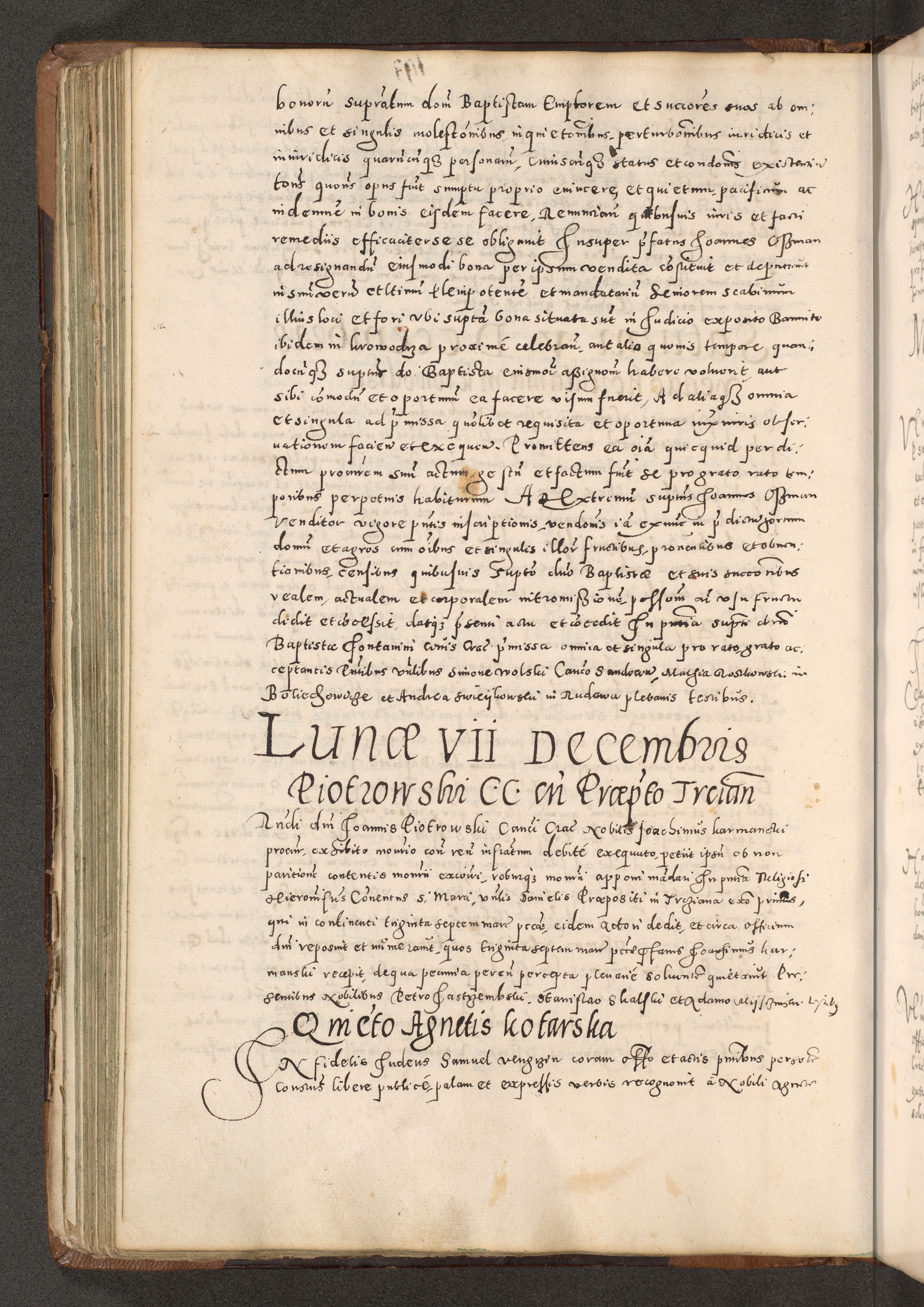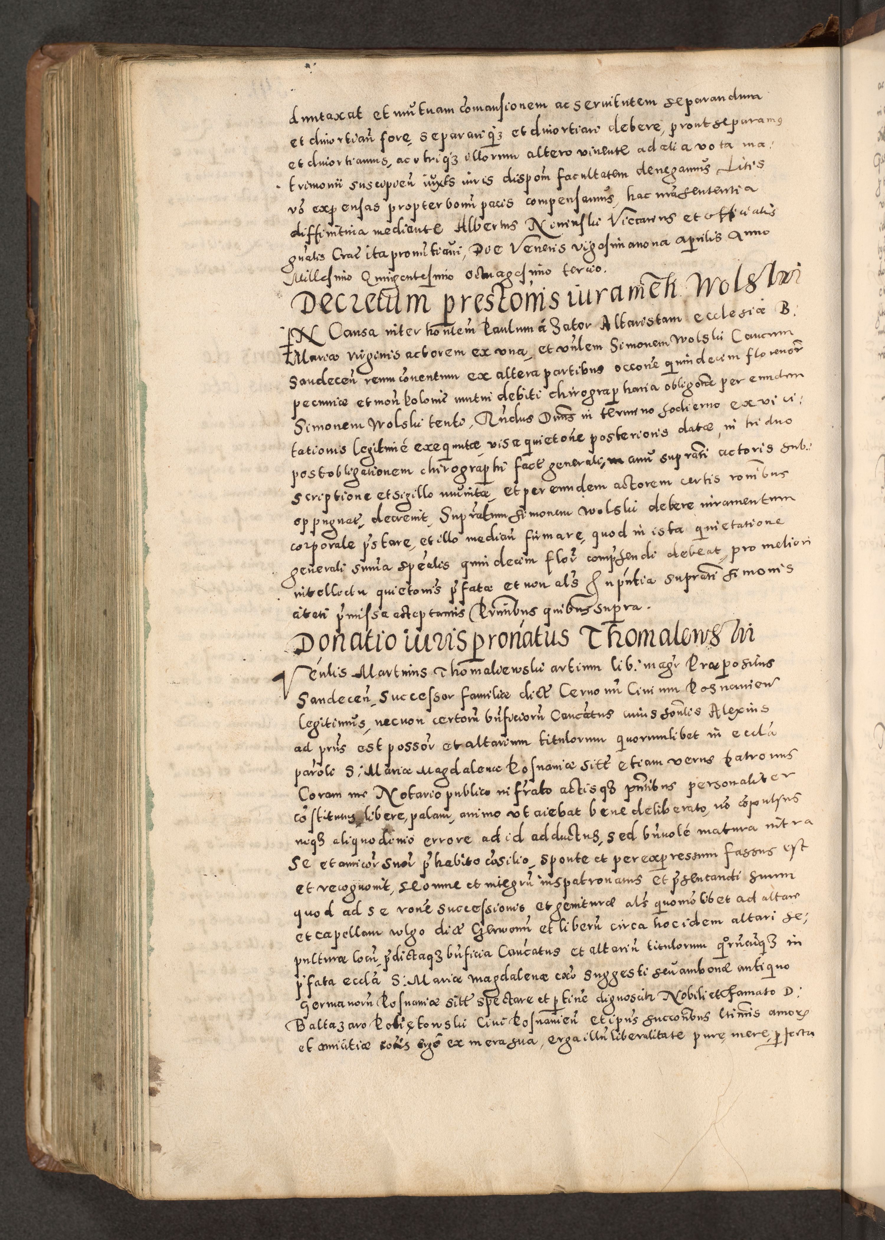 Acta actorum causarum tam diffinitivarum quam interloquutoriarum sententiarum decretorum obligationum quietatorum constuorum pro reverendum coram Reverendo Domino Alberto Nininski Custode Sandecensis Canonico et Archipresbitero Viccarioque in Spiritualibus ac Officiali Generali Cracoviensis ad Annum Domini Millesimum Qumgentesimum Septuagentesimum Nonum cuius Judictio septima Pontificat SS. nostri Domini Gregory pp. tredecimi Anno septimo inchoantur faliciter