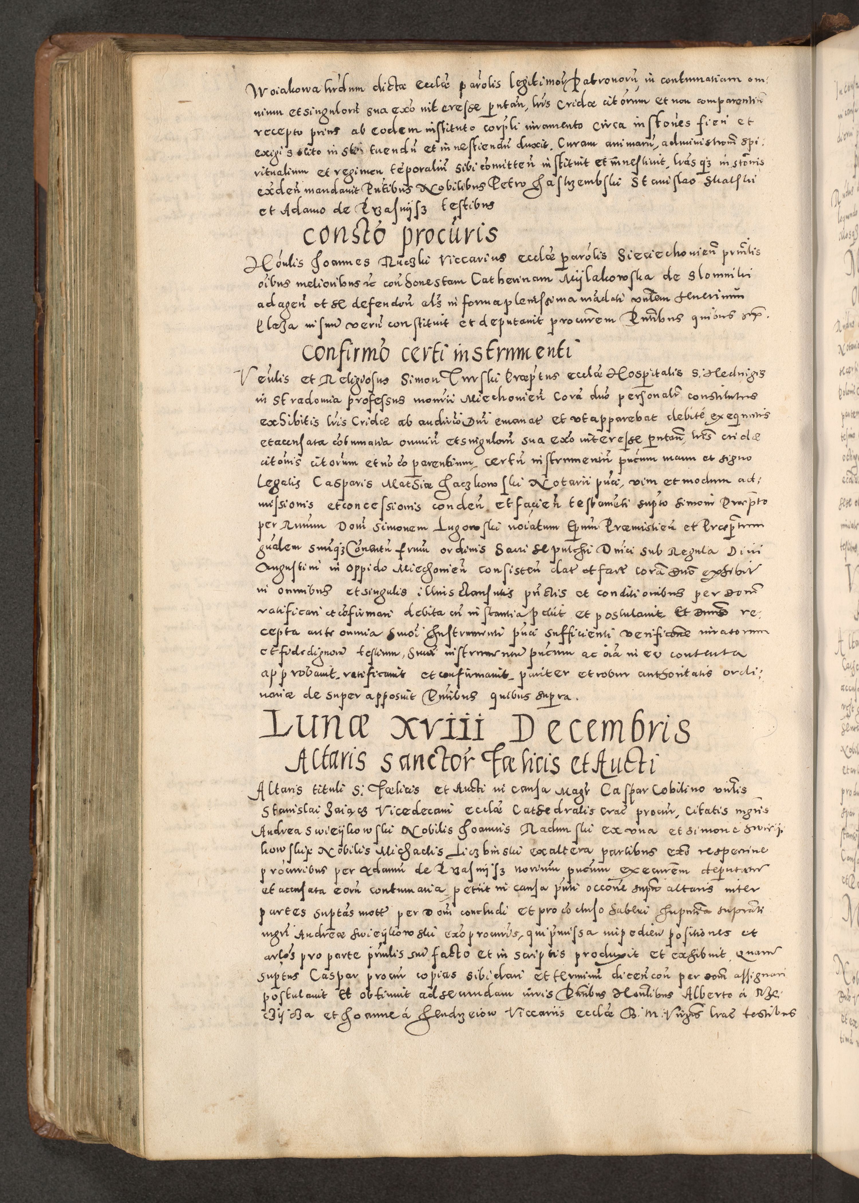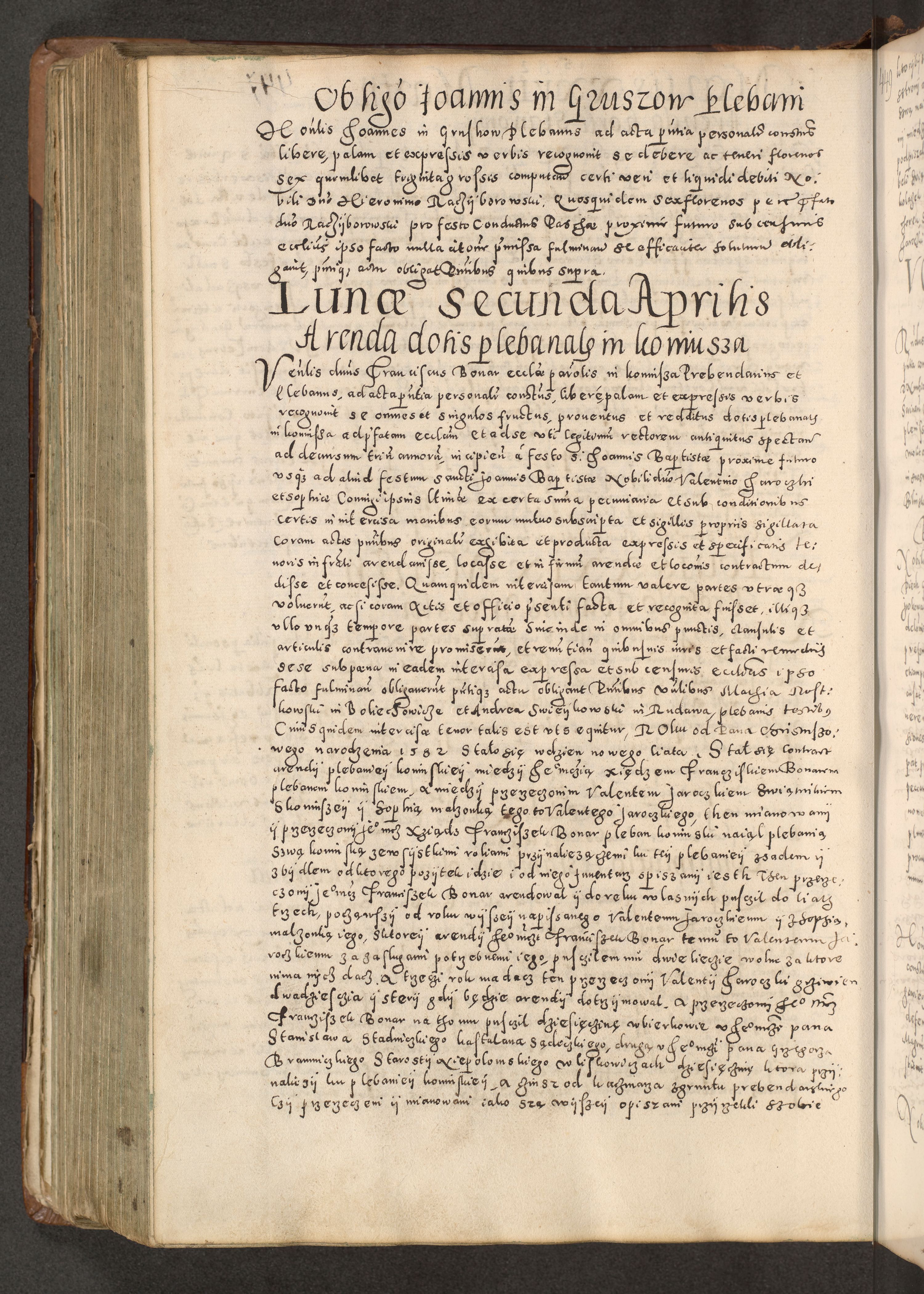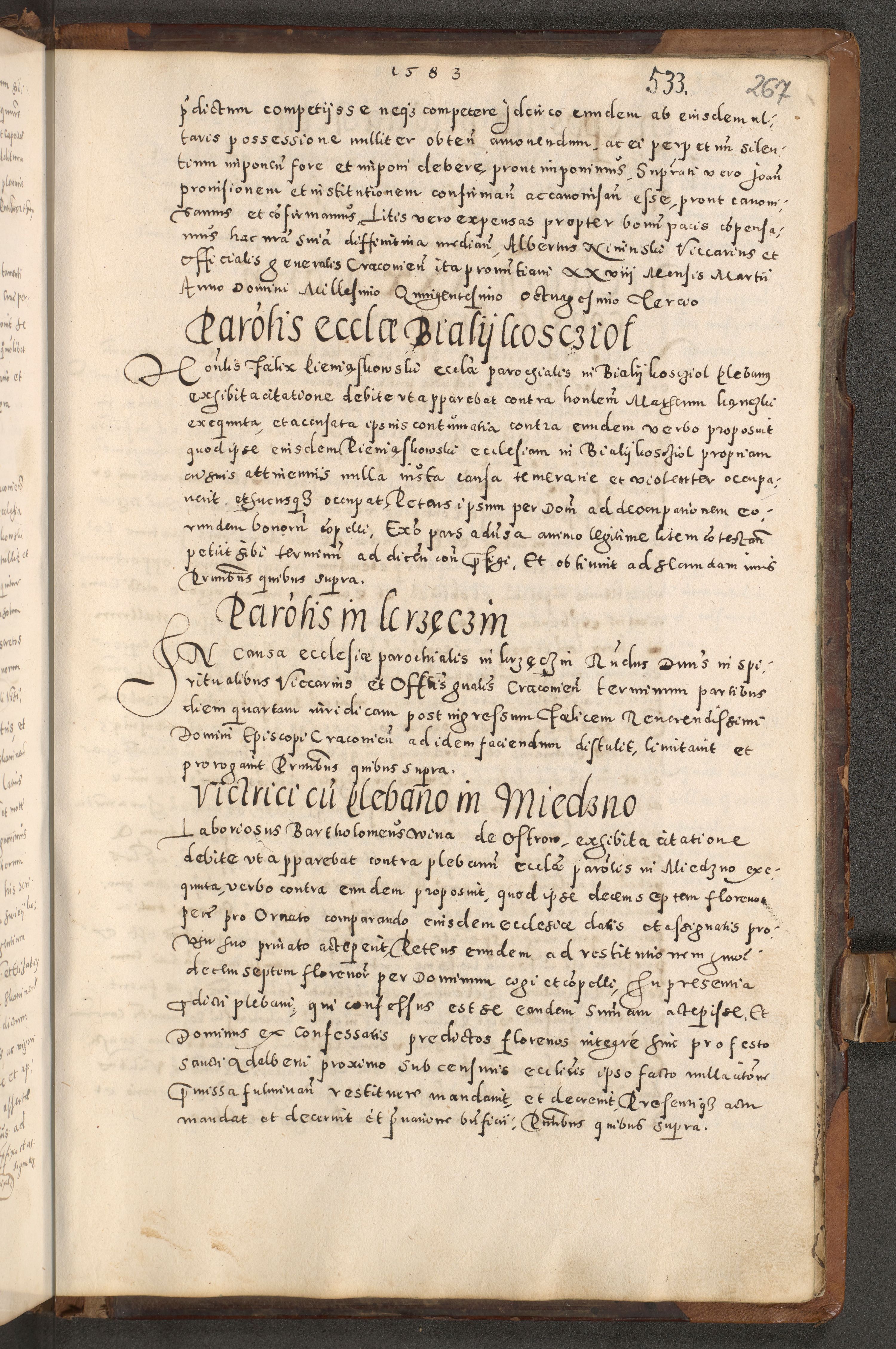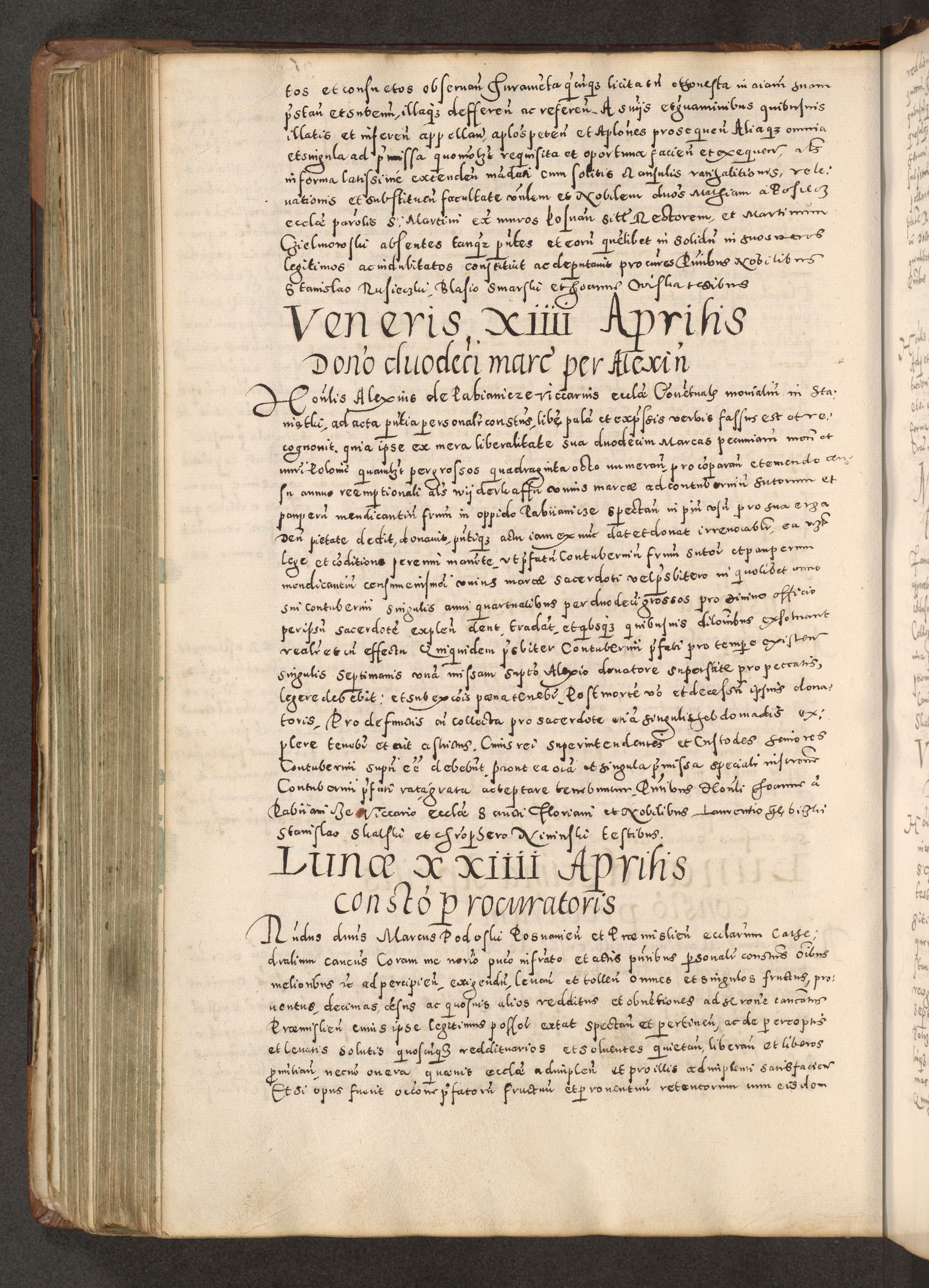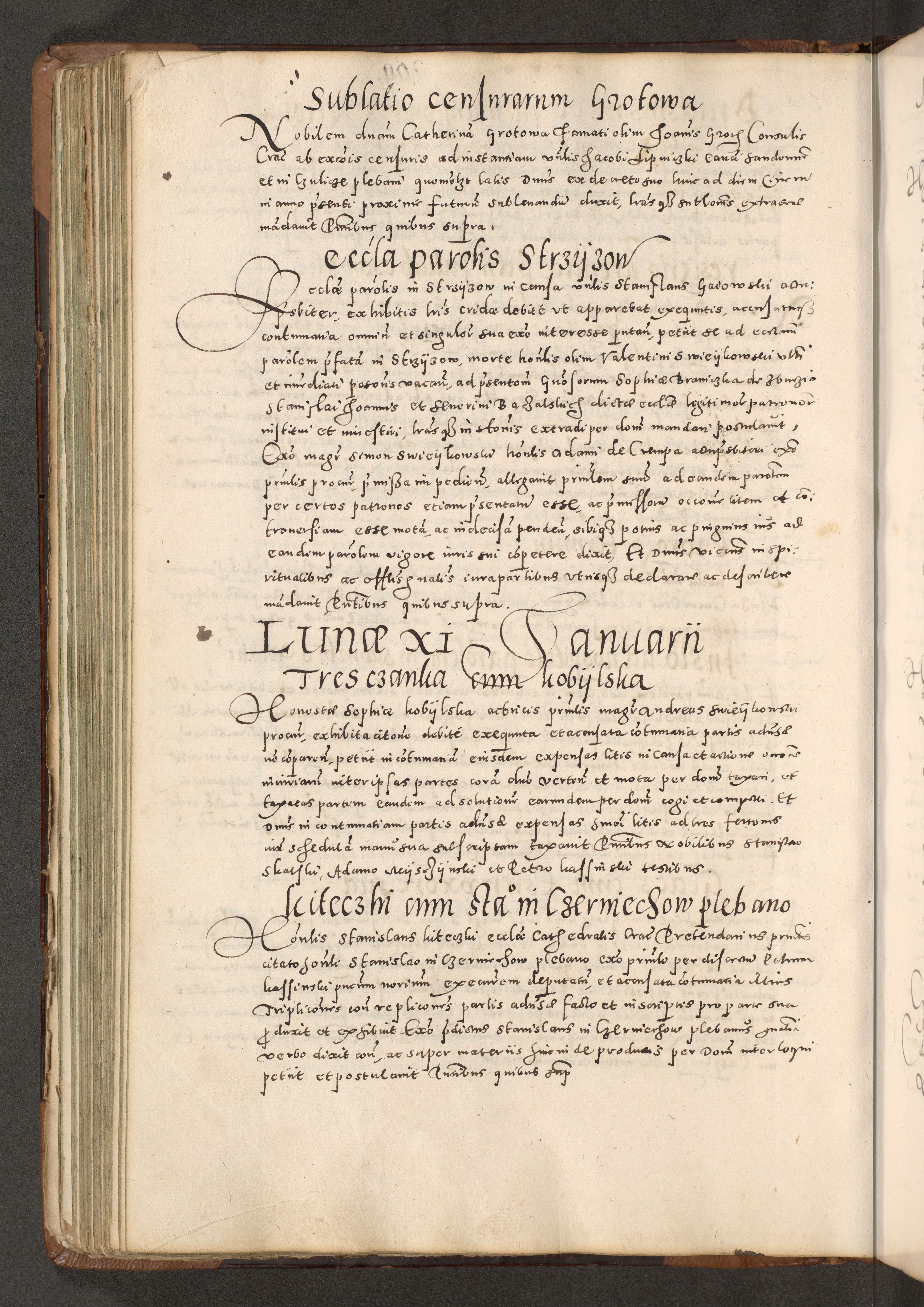 Acta actorum causarum tam diffinitivarum quam interloquutoriarum sententiarum decretorum obligationum quietatorum constuorum pro reverendum coram Reverendo Domino Alberto Nininski Custode Sandecensis Canonico et Archipresbitero Viccarioque in Spiritualibus ac Officiali Generali Cracoviensis ad Annum Domini Millesimum Qumgentesimum Septuagentesimum Nonum cuius Judictio septima Pontificat SS. nostri Domini Gregory pp. tredecimi Anno septimo inchoantur faliciter