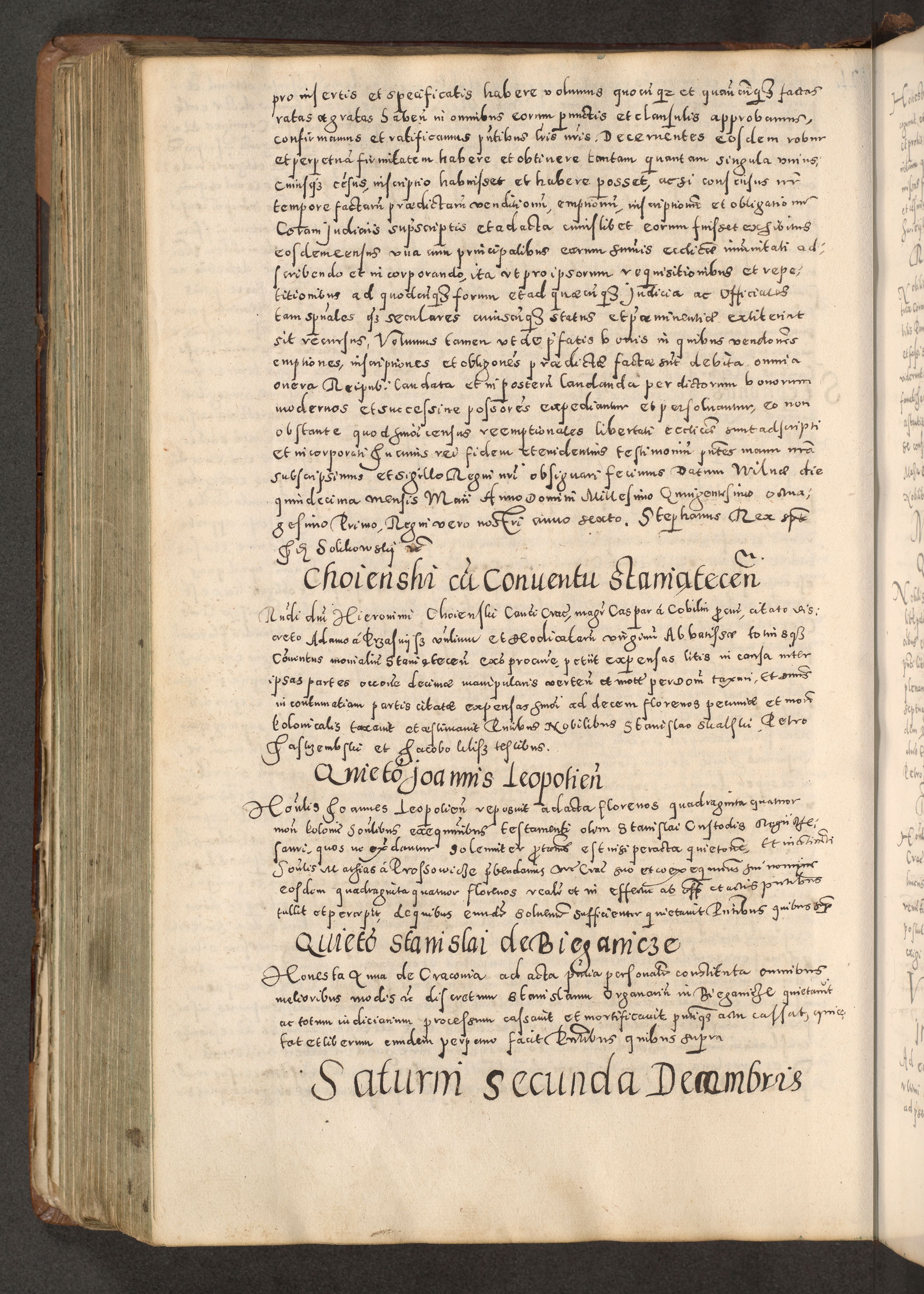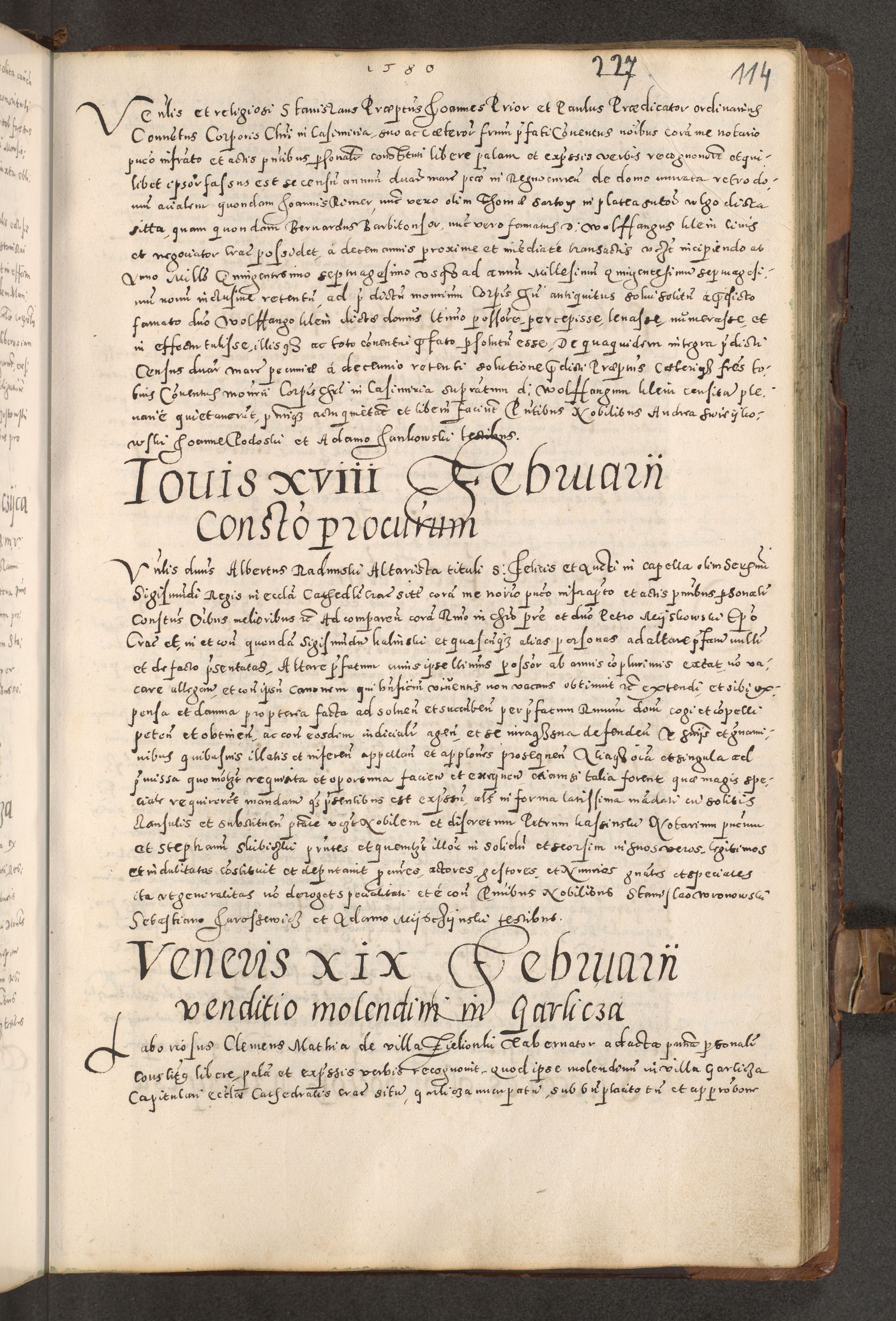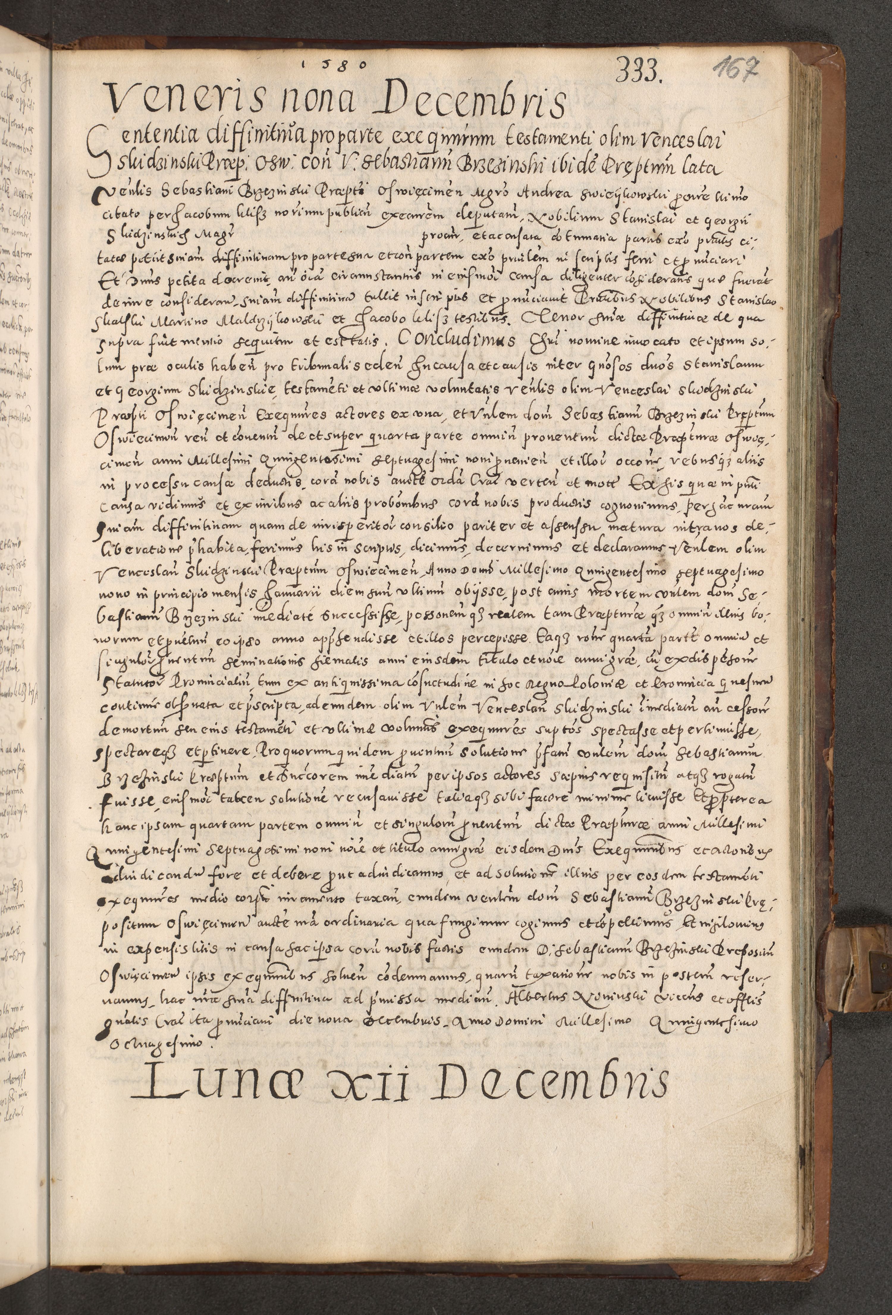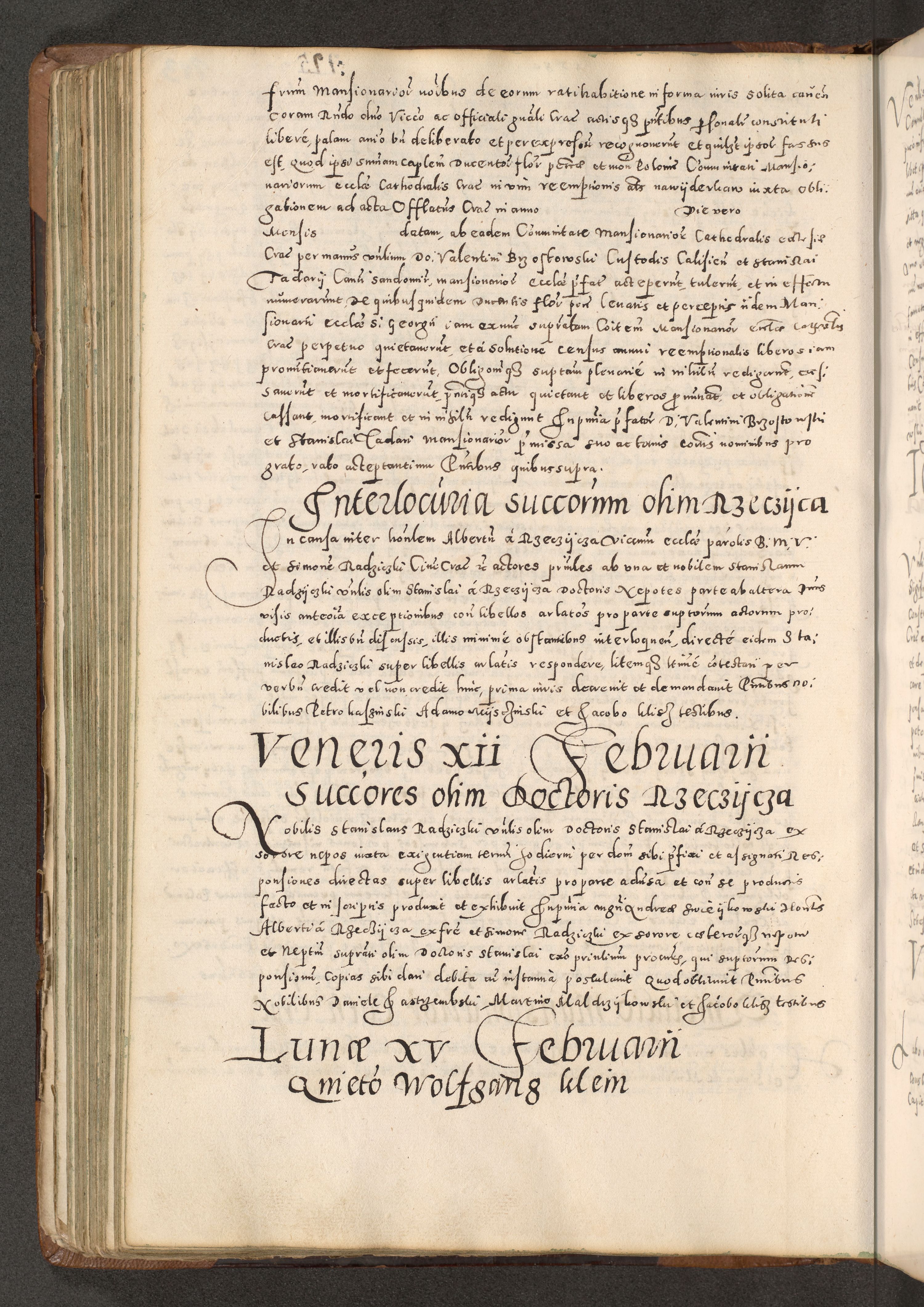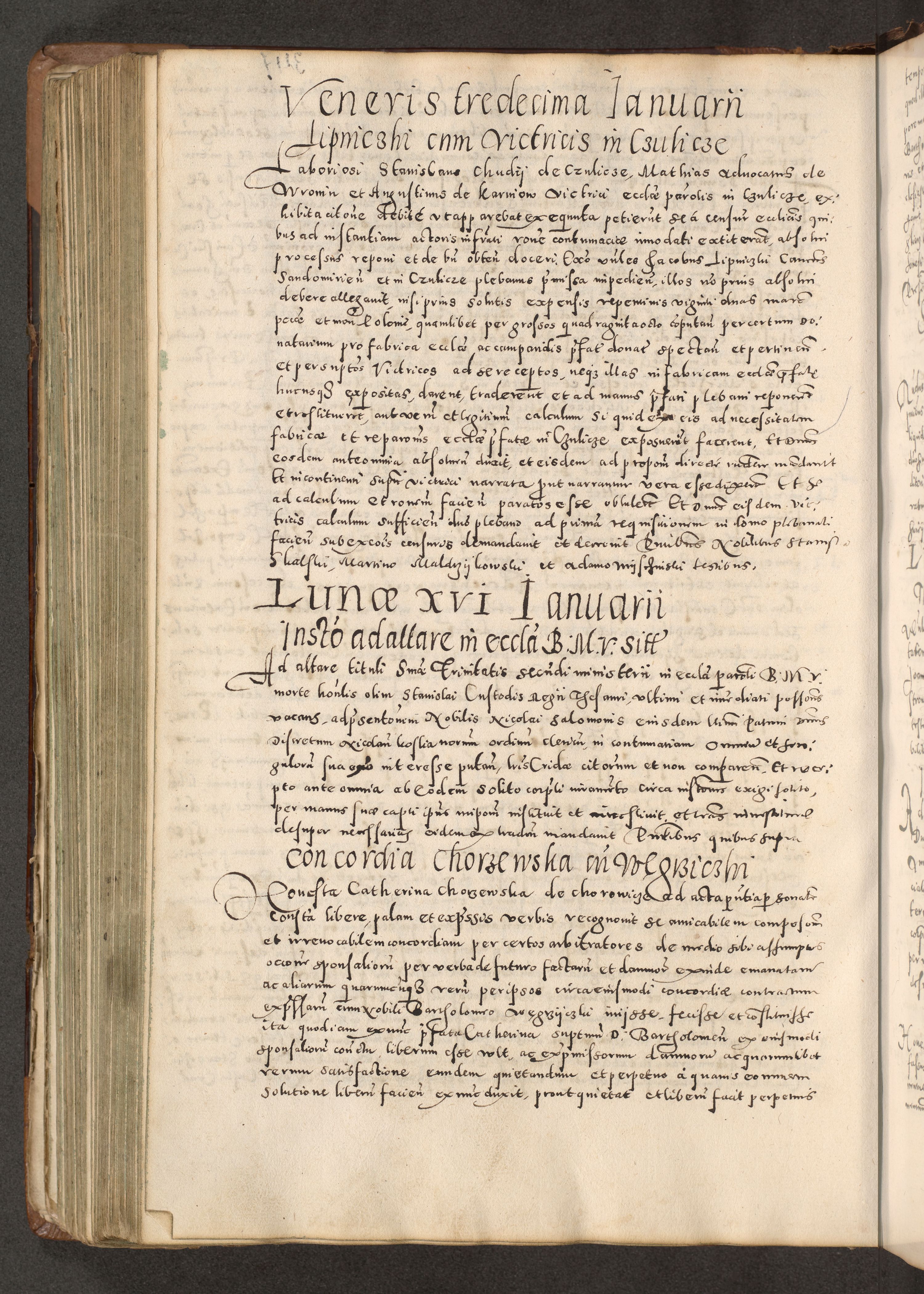 Acta actorum causarum tam diffinitivarum quam interloquutoriarum sententiarum decretorum obligationum quietatorum constuorum pro reverendum coram Reverendo Domino Alberto Nininski Custode Sandecensis Canonico et Archipresbitero Viccarioque in Spiritualibus ac Officiali Generali Cracoviensis ad Annum Domini Millesimum Qumgentesimum Septuagentesimum Nonum cuius Judictio septima Pontificat SS. nostri Domini Gregory pp. tredecimi Anno septimo inchoantur faliciter