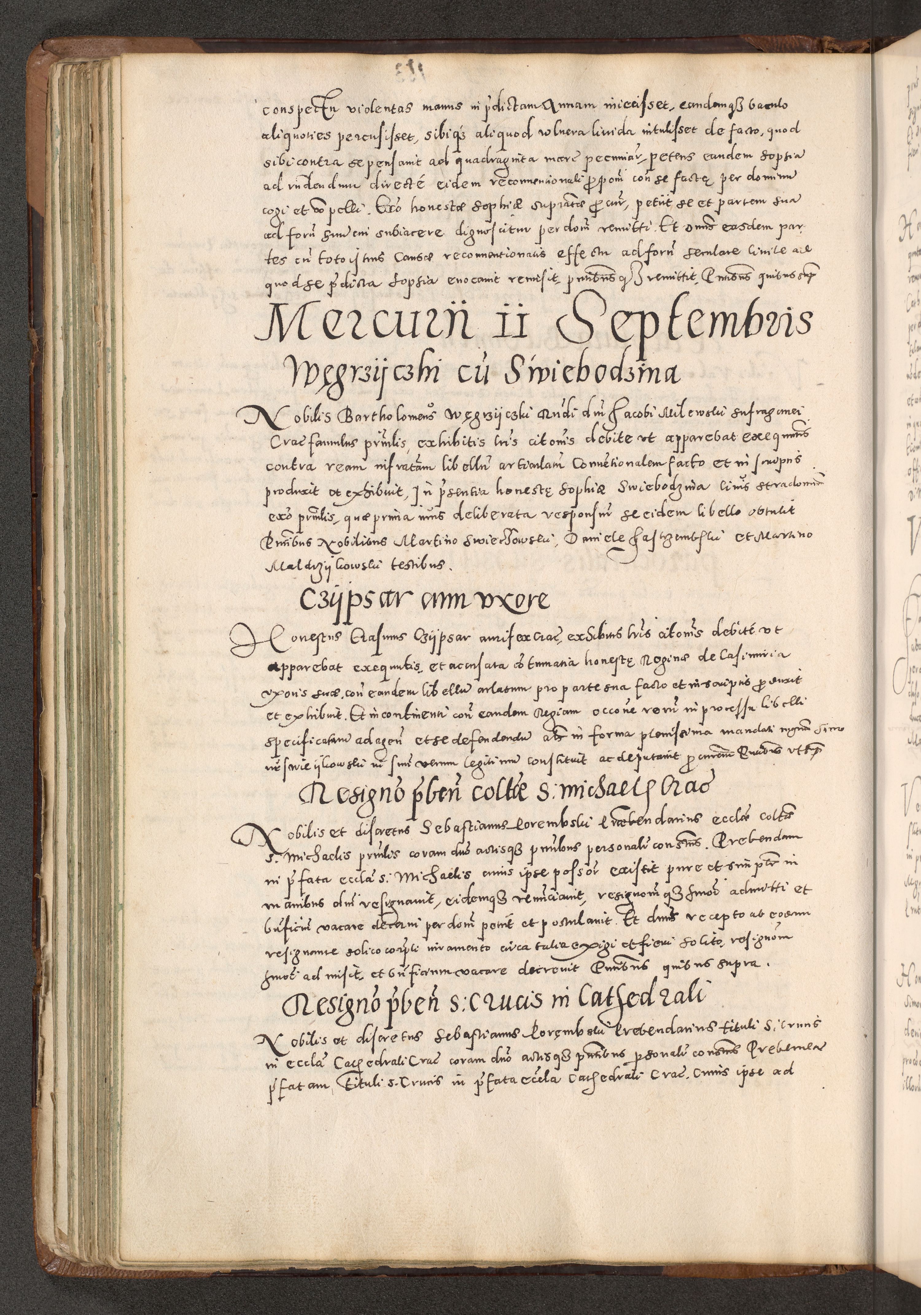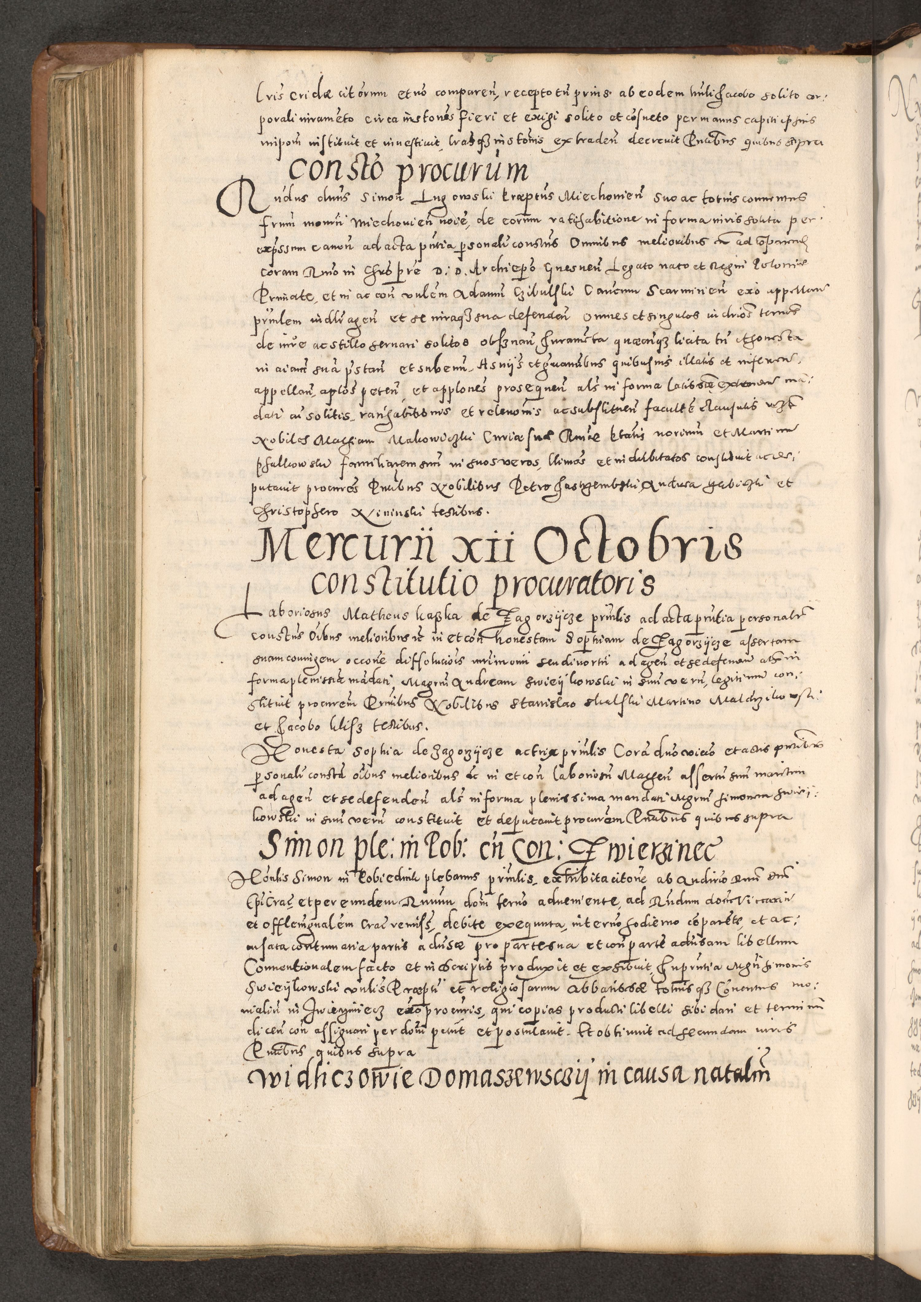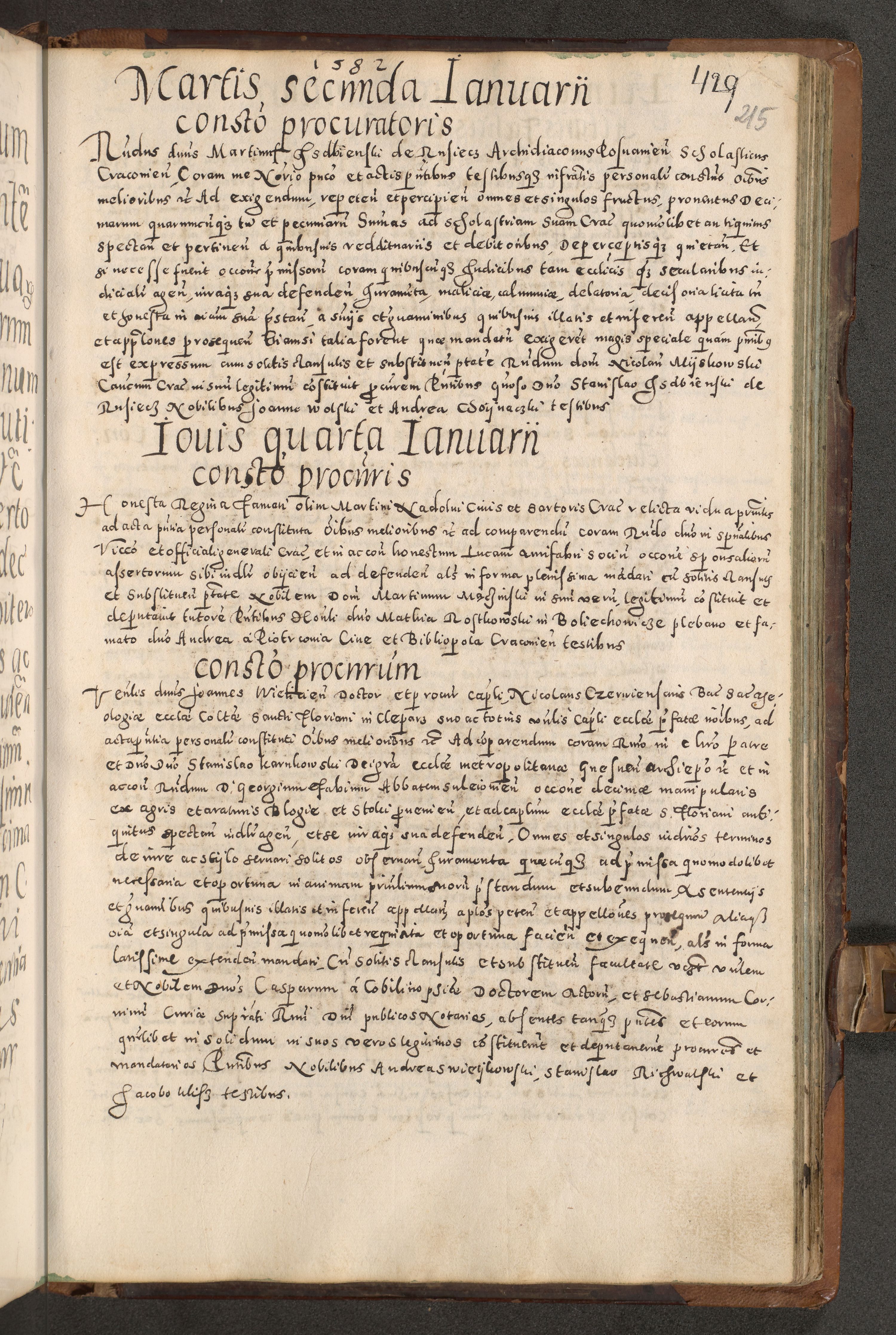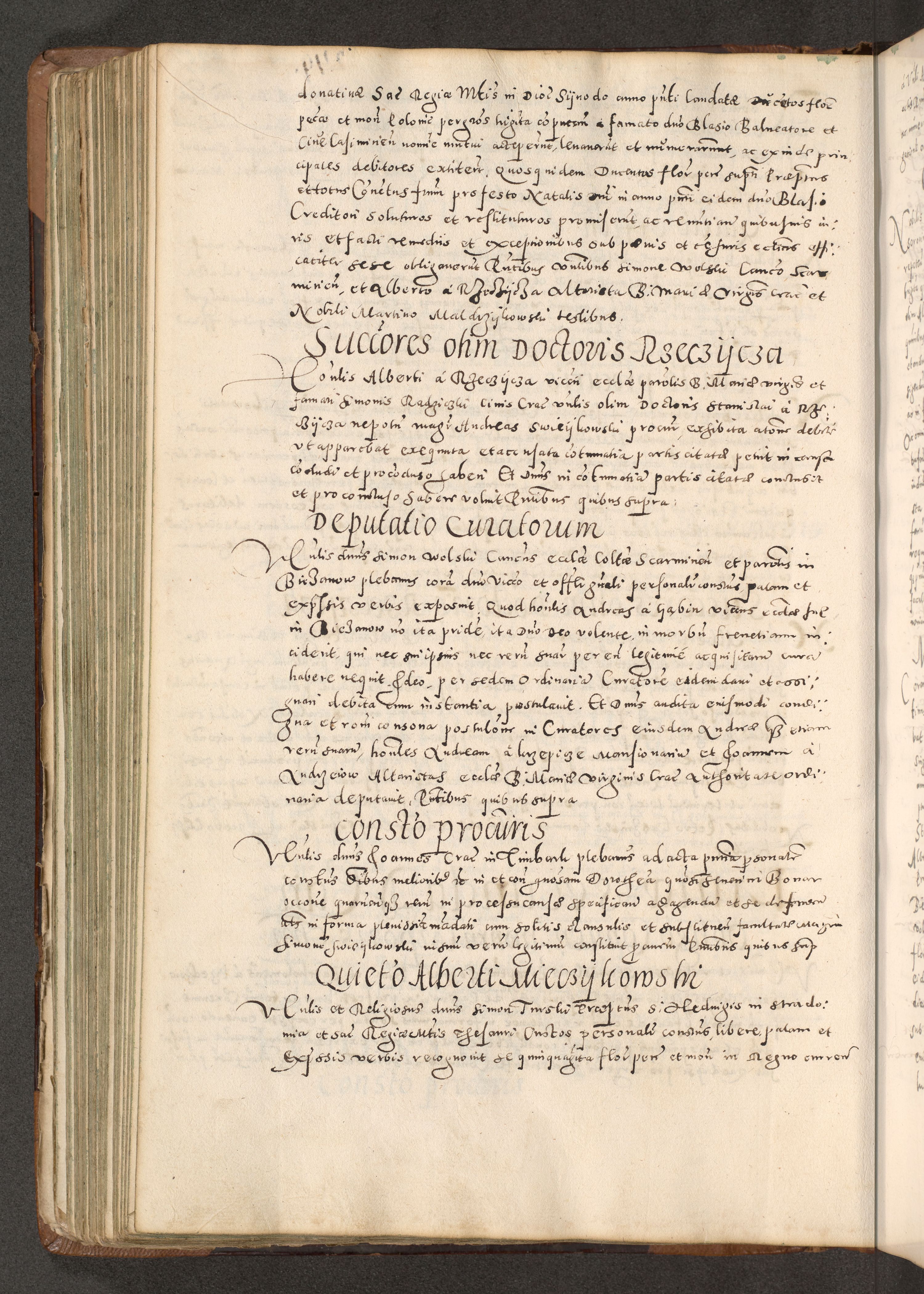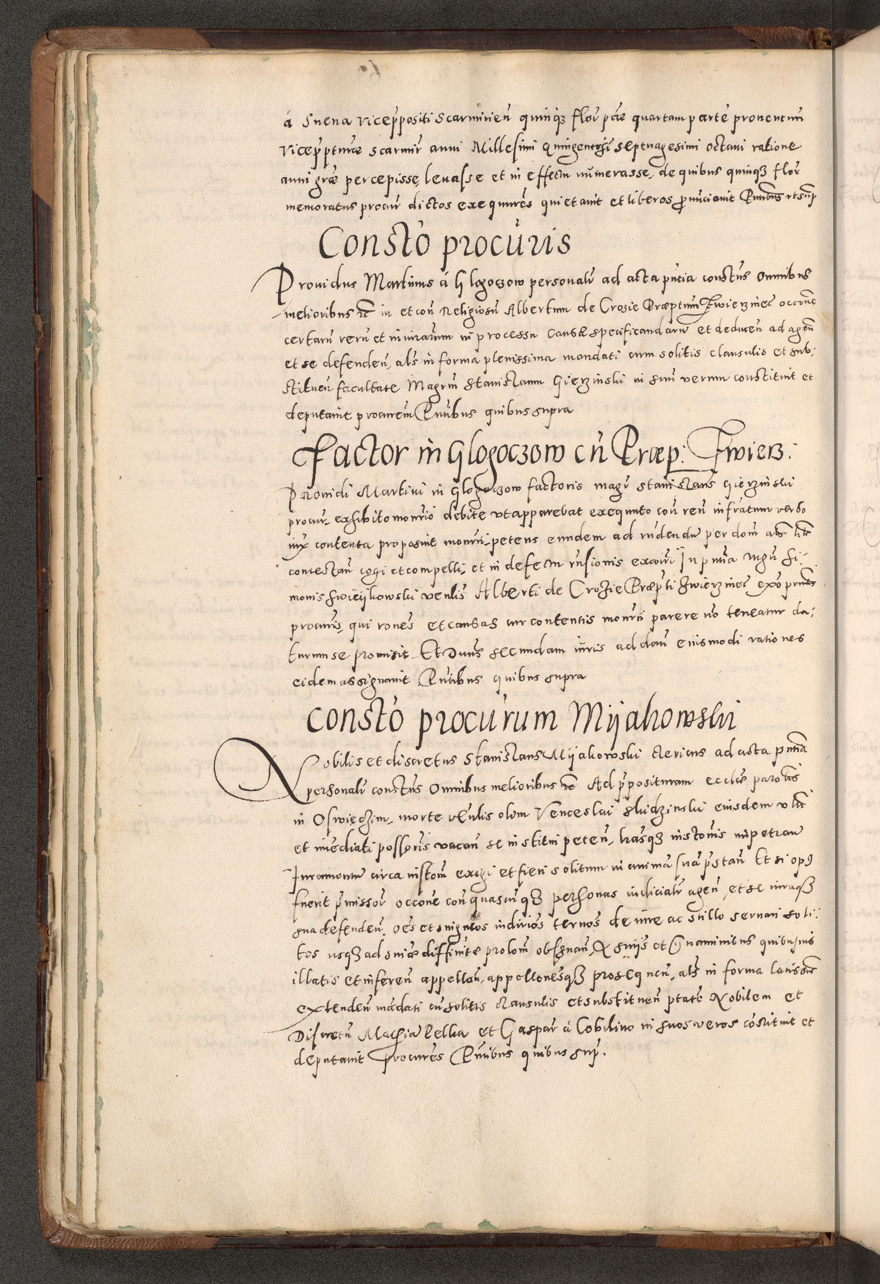 Acta actorum causarum tam diffinitivarum quam interloquutoriarum sententiarum decretorum obligationum quietatorum constuorum pro reverendum coram Reverendo Domino Alberto Nininski Custode Sandecensis Canonico et Archipresbitero Viccarioque in Spiritualibus ac Officiali Generali Cracoviensis ad Annum Domini Millesimum Qumgentesimum Septuagentesimum Nonum cuius Judictio septima Pontificat SS. nostri Domini Gregory pp. tredecimi Anno septimo inchoantur faliciter