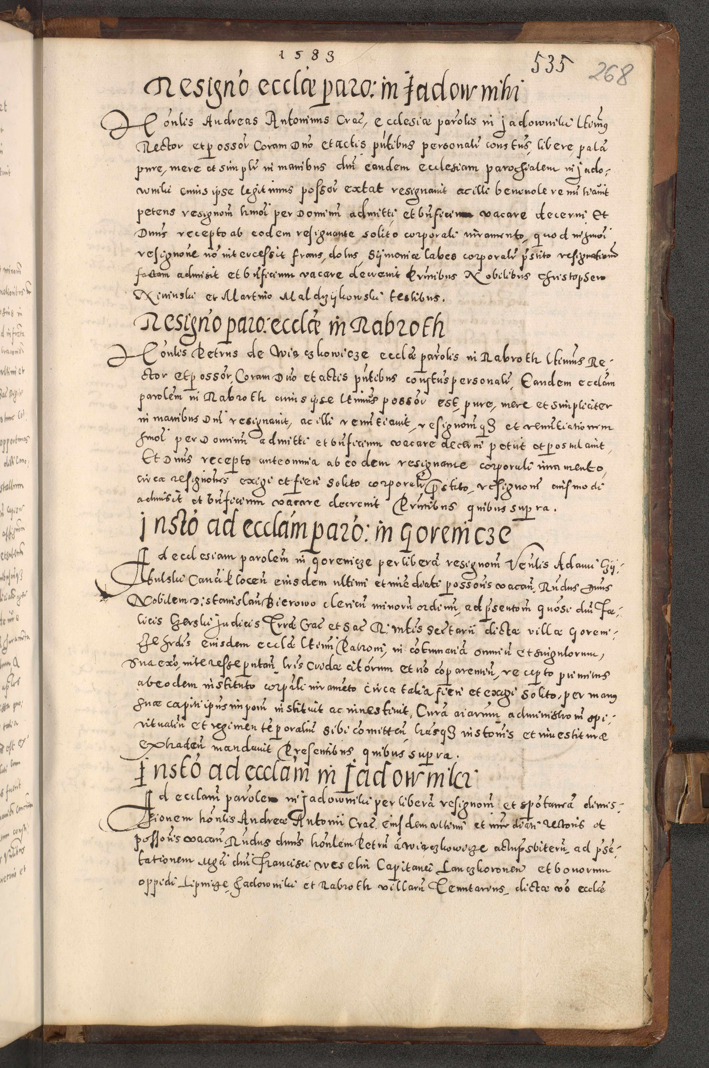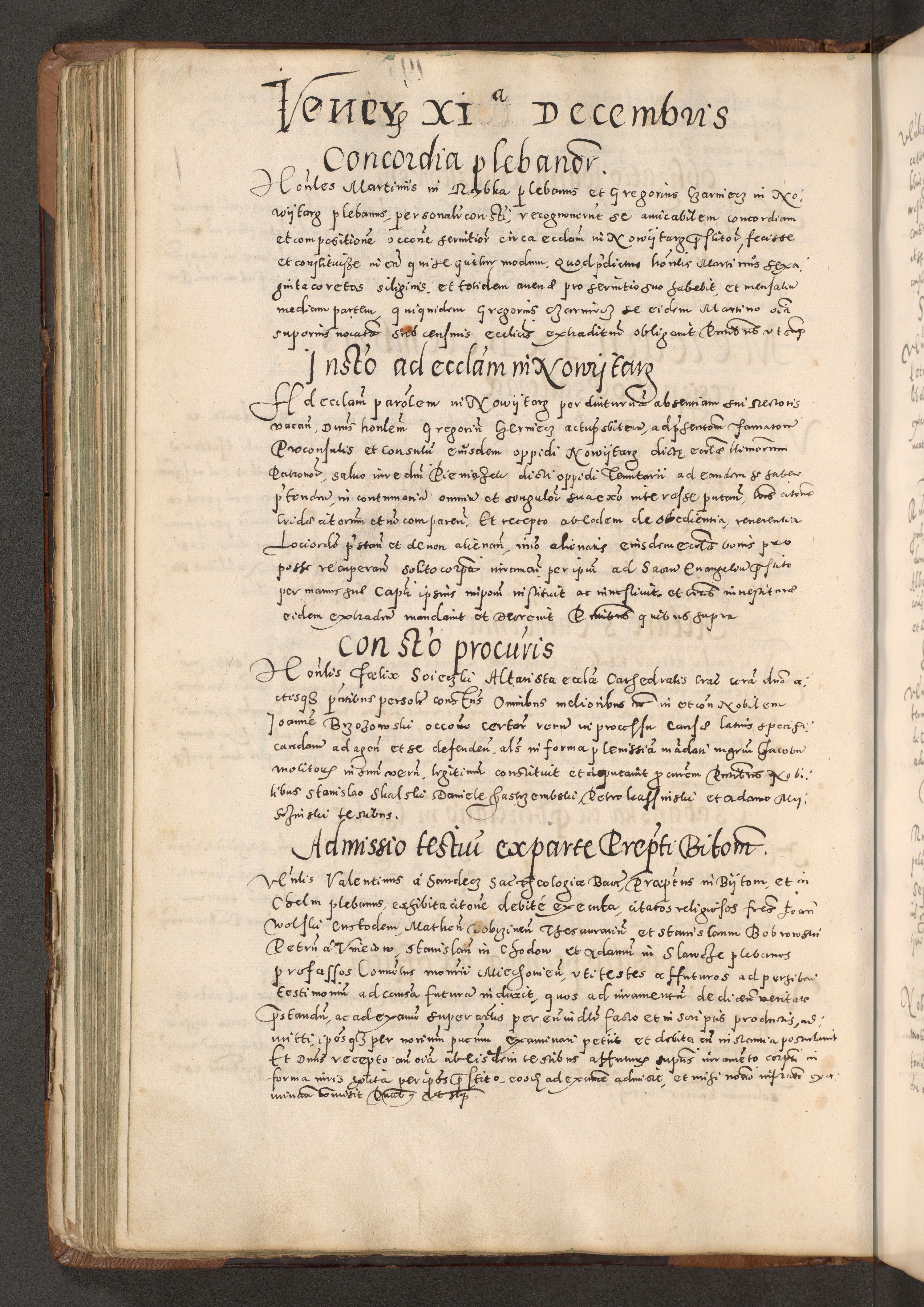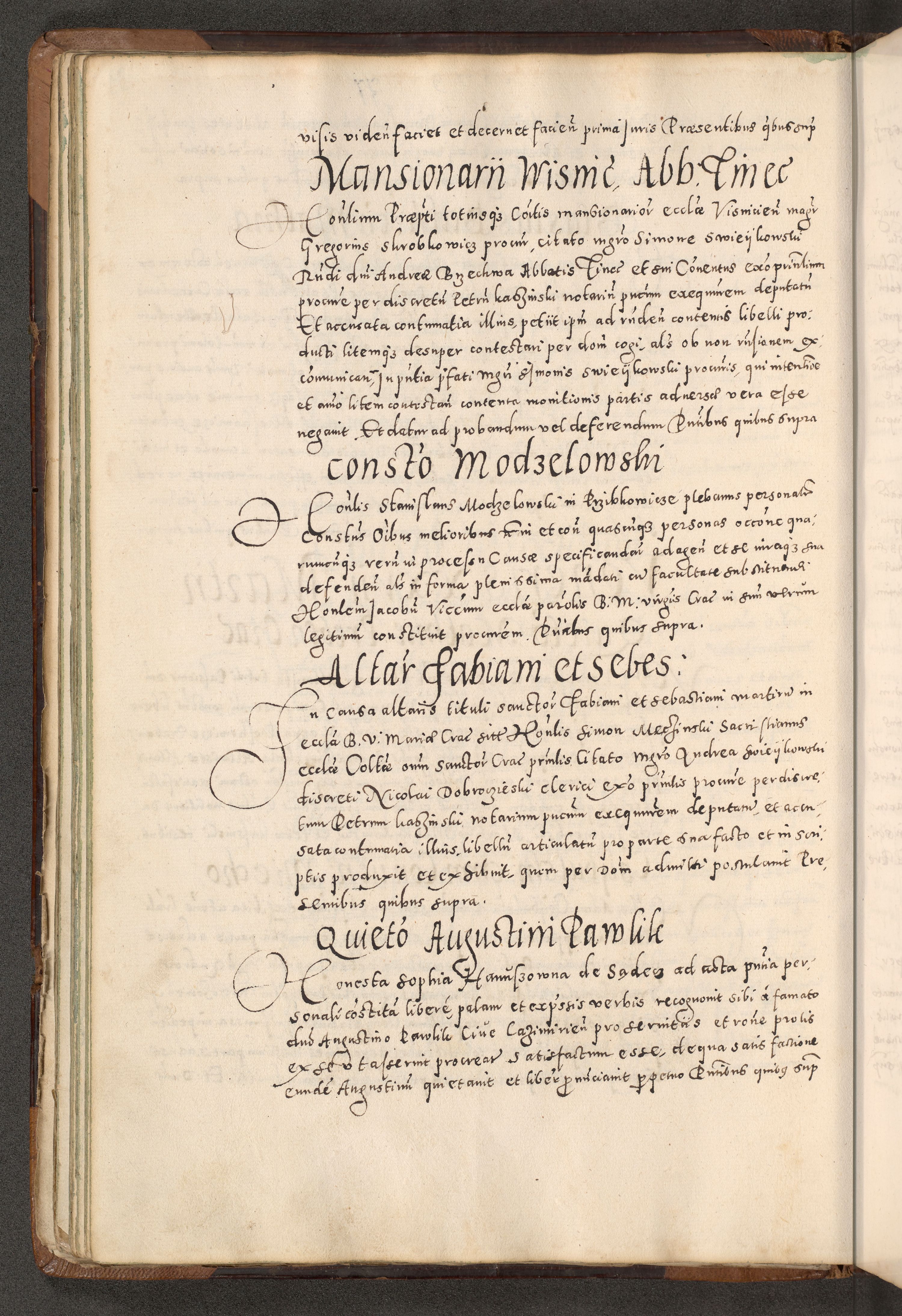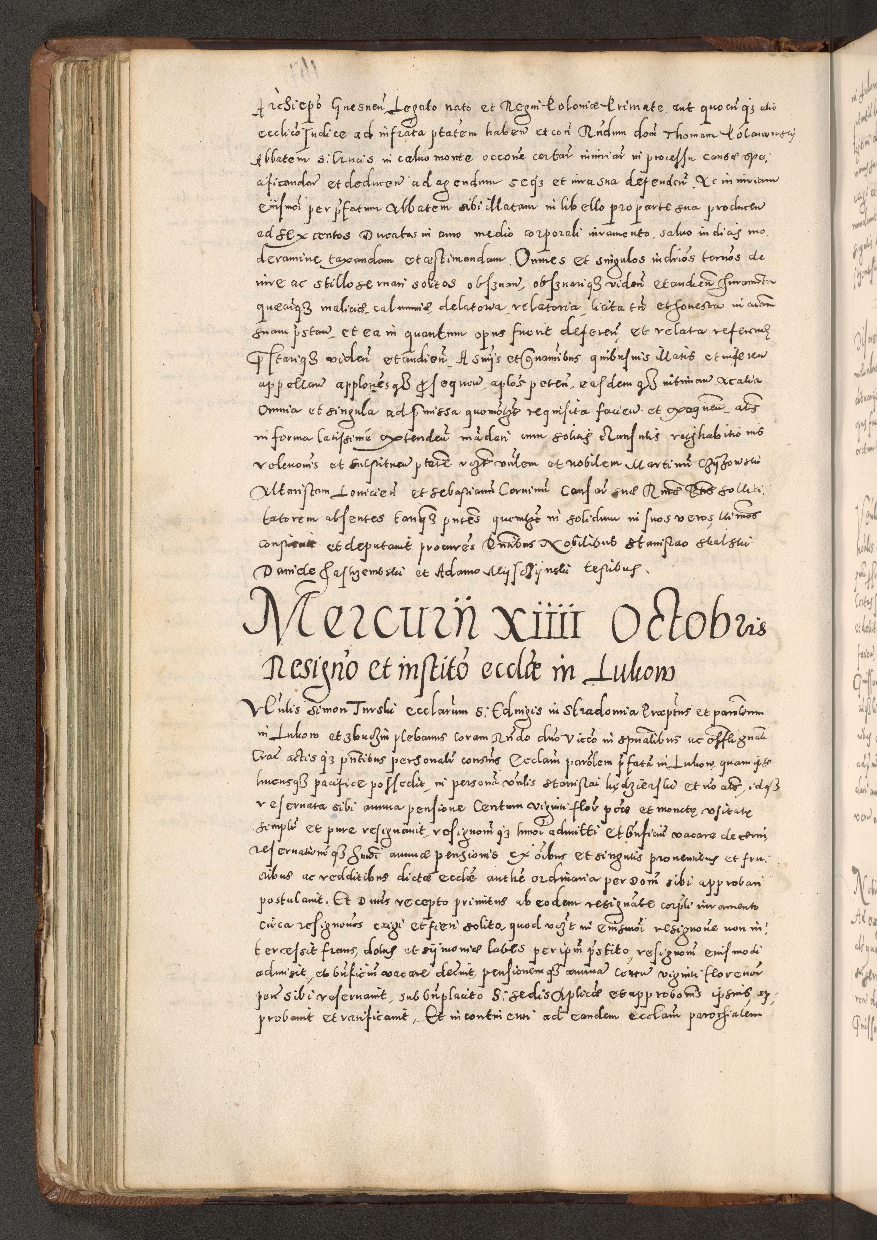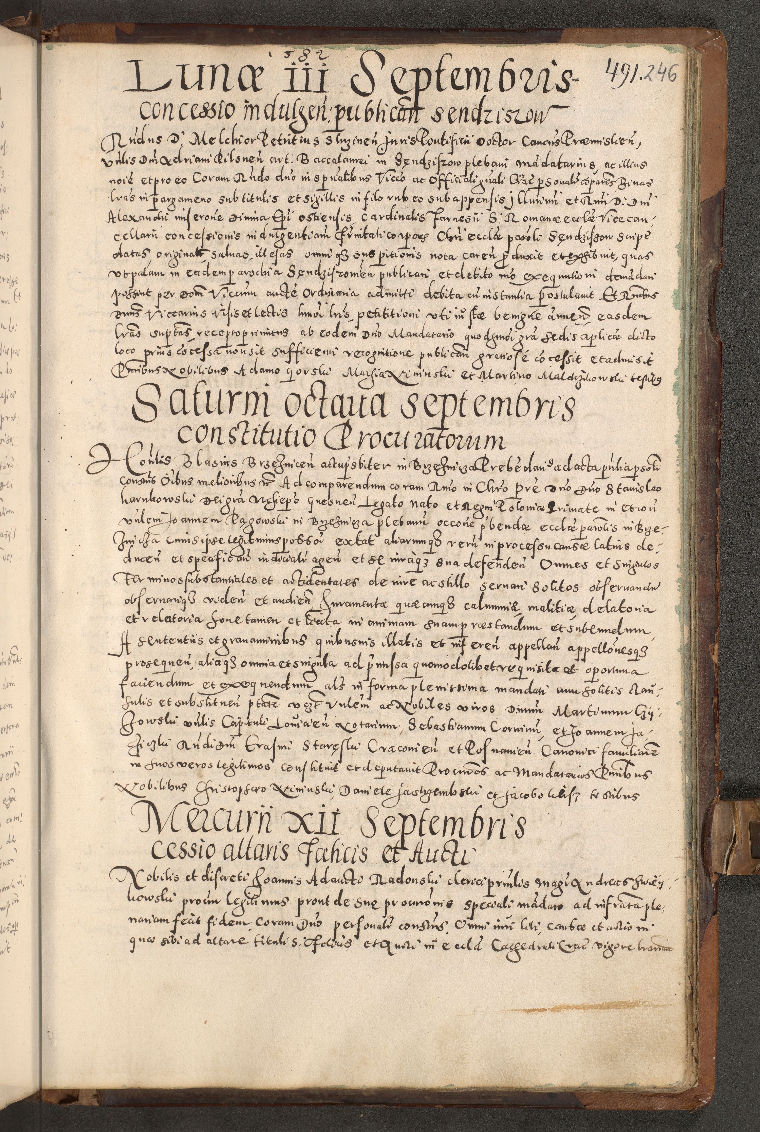 Acta actorum causarum tam diffinitivarum quam interloquutoriarum sententiarum decretorum obligationum quietatorum constuorum pro reverendum coram Reverendo Domino Alberto Nininski Custode Sandecensis Canonico et Archipresbitero Viccarioque in Spiritualibus ac Officiali Generali Cracoviensis ad Annum Domini Millesimum Qumgentesimum Septuagentesimum Nonum cuius Judictio septima Pontificat SS. nostri Domini Gregory pp. tredecimi Anno septimo inchoantur faliciter