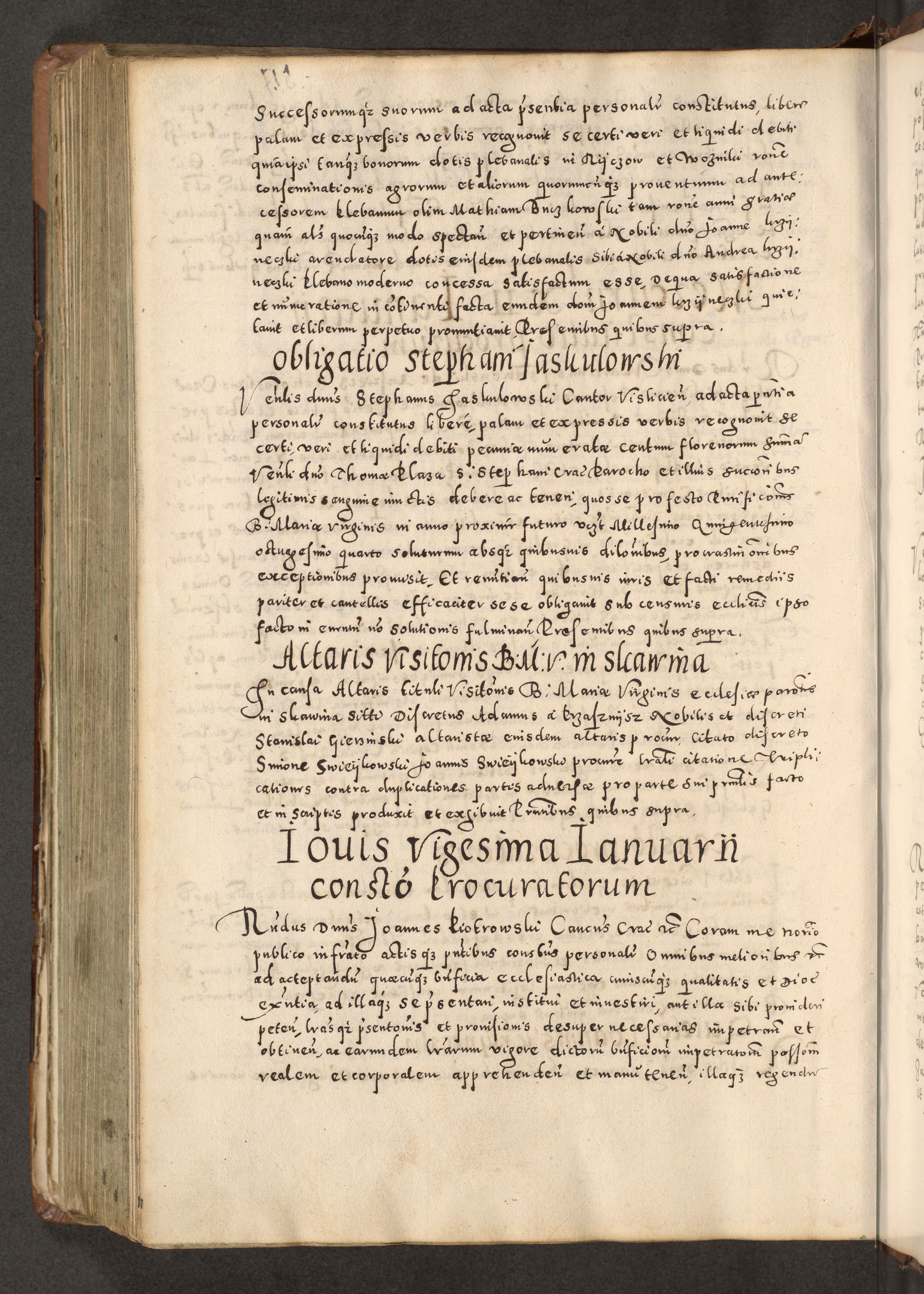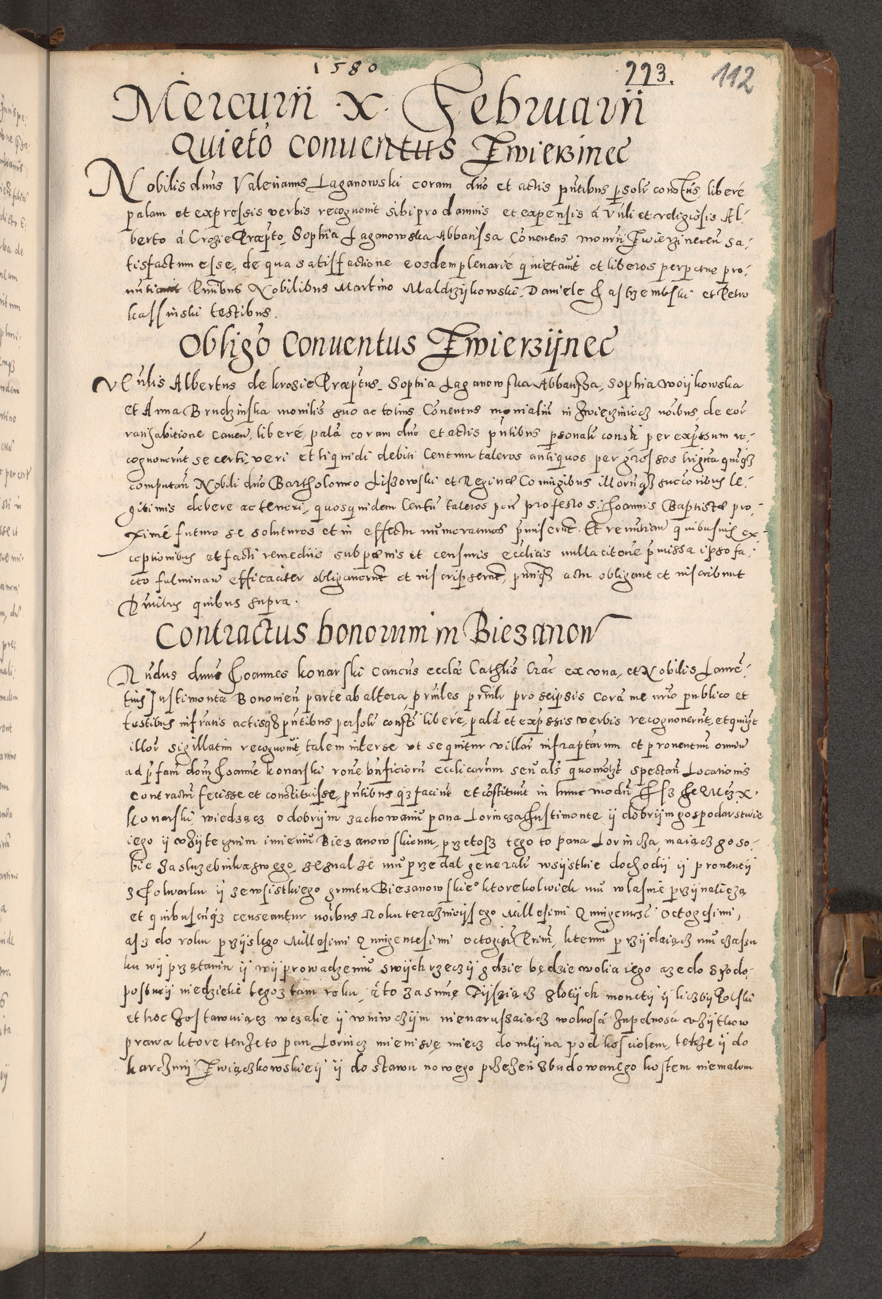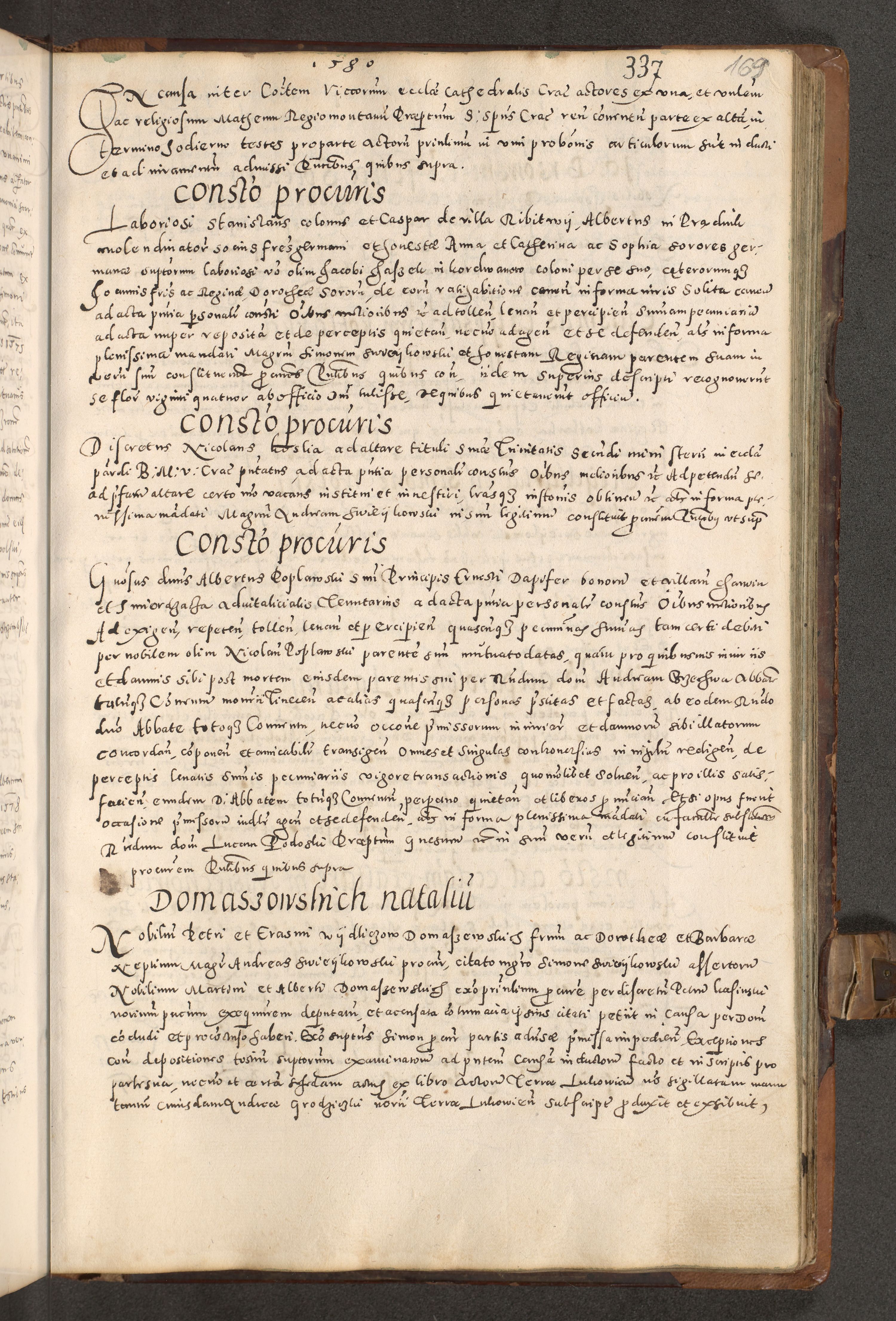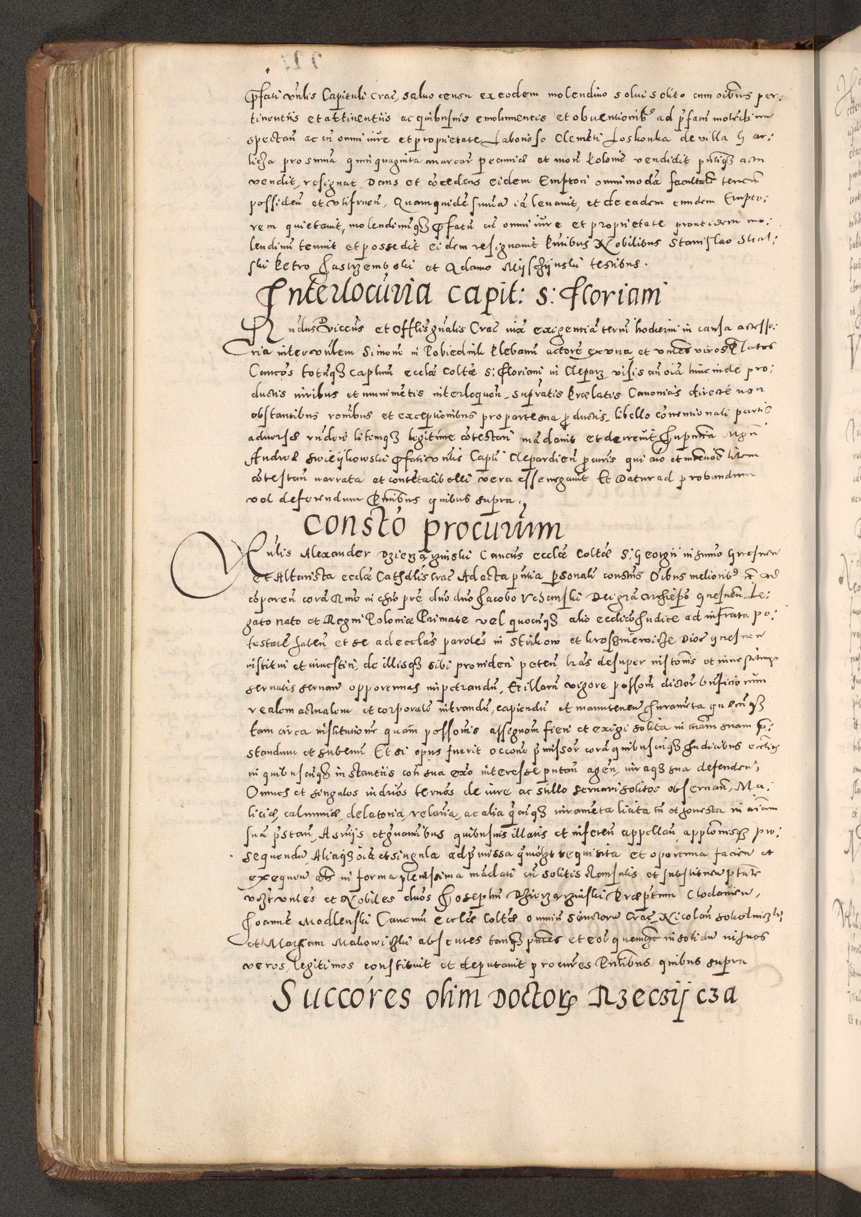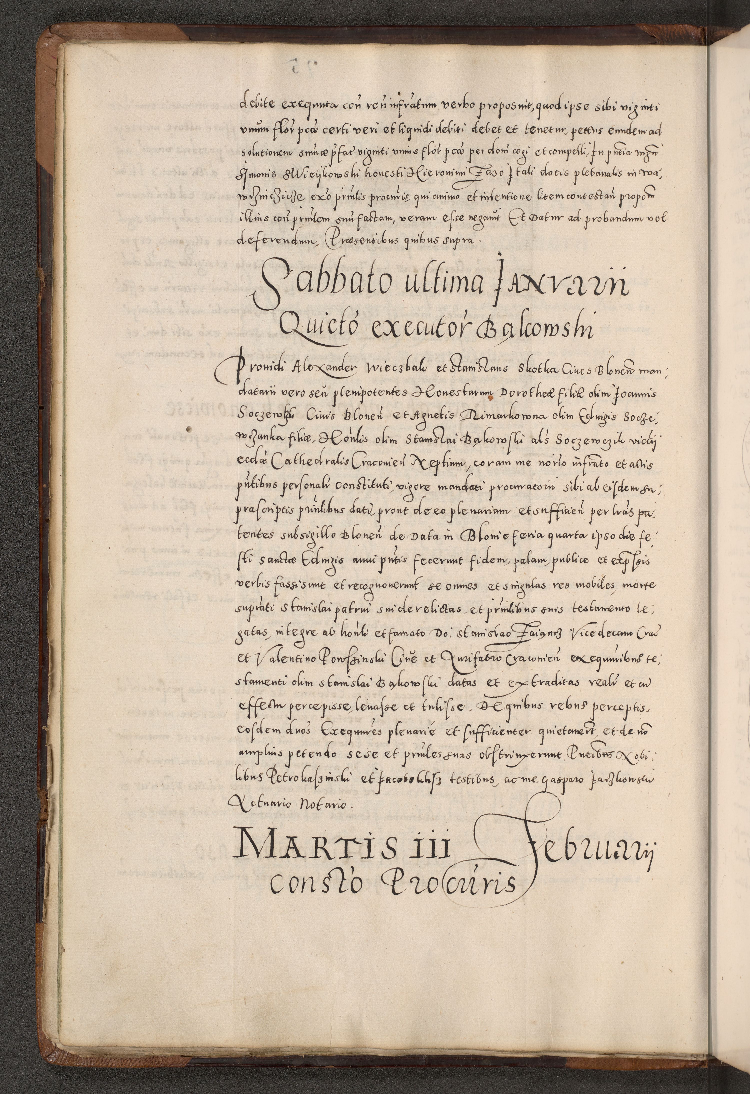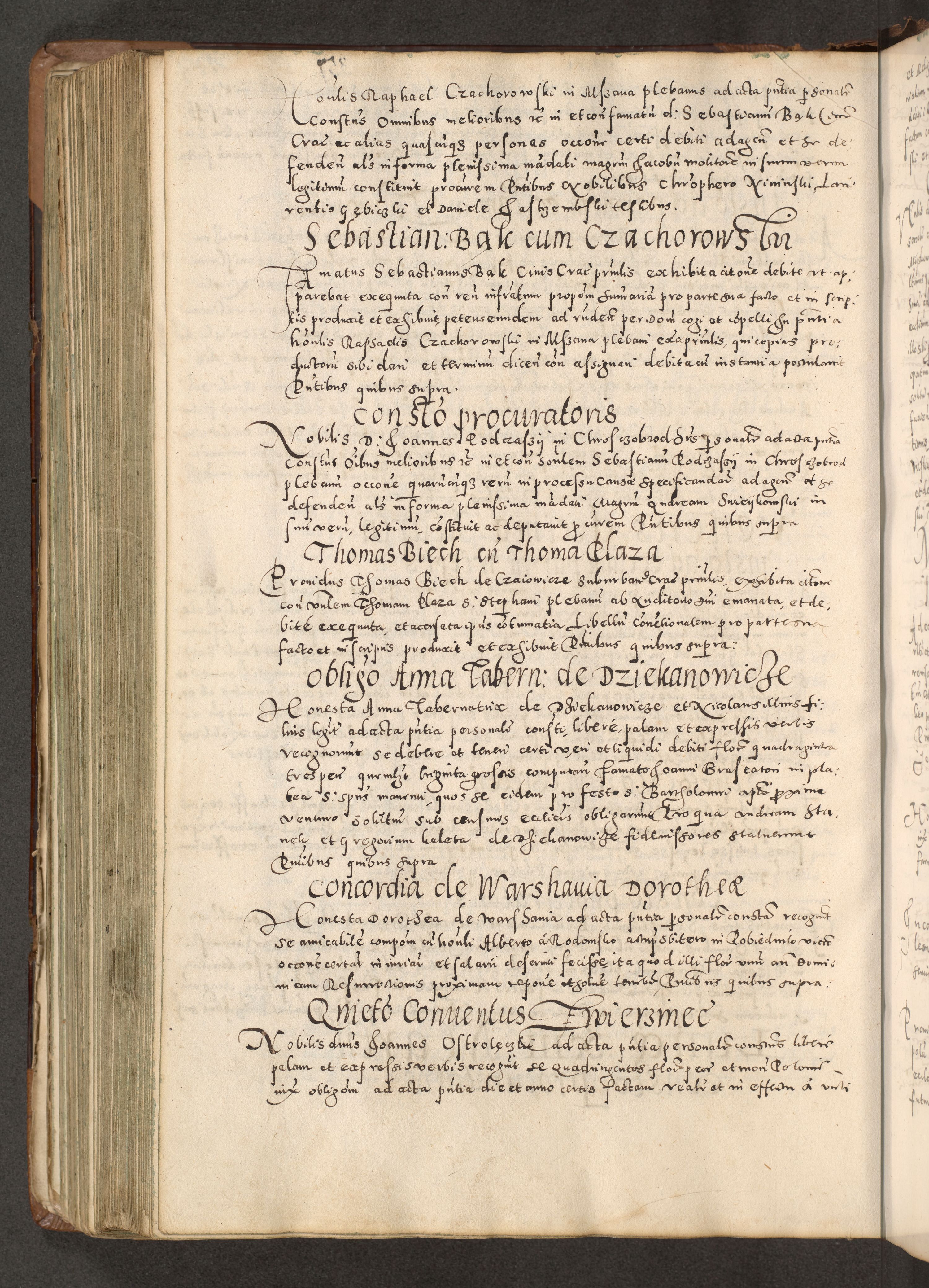 Acta actorum causarum tam diffinitivarum quam interloquutoriarum sententiarum decretorum obligationum quietatorum constuorum pro reverendum coram Reverendo Domino Alberto Nininski Custode Sandecensis Canonico et Archipresbitero Viccarioque in Spiritualibus ac Officiali Generali Cracoviensis ad Annum Domini Millesimum Qumgentesimum Septuagentesimum Nonum cuius Judictio septima Pontificat SS. nostri Domini Gregory pp. tredecimi Anno septimo inchoantur faliciter