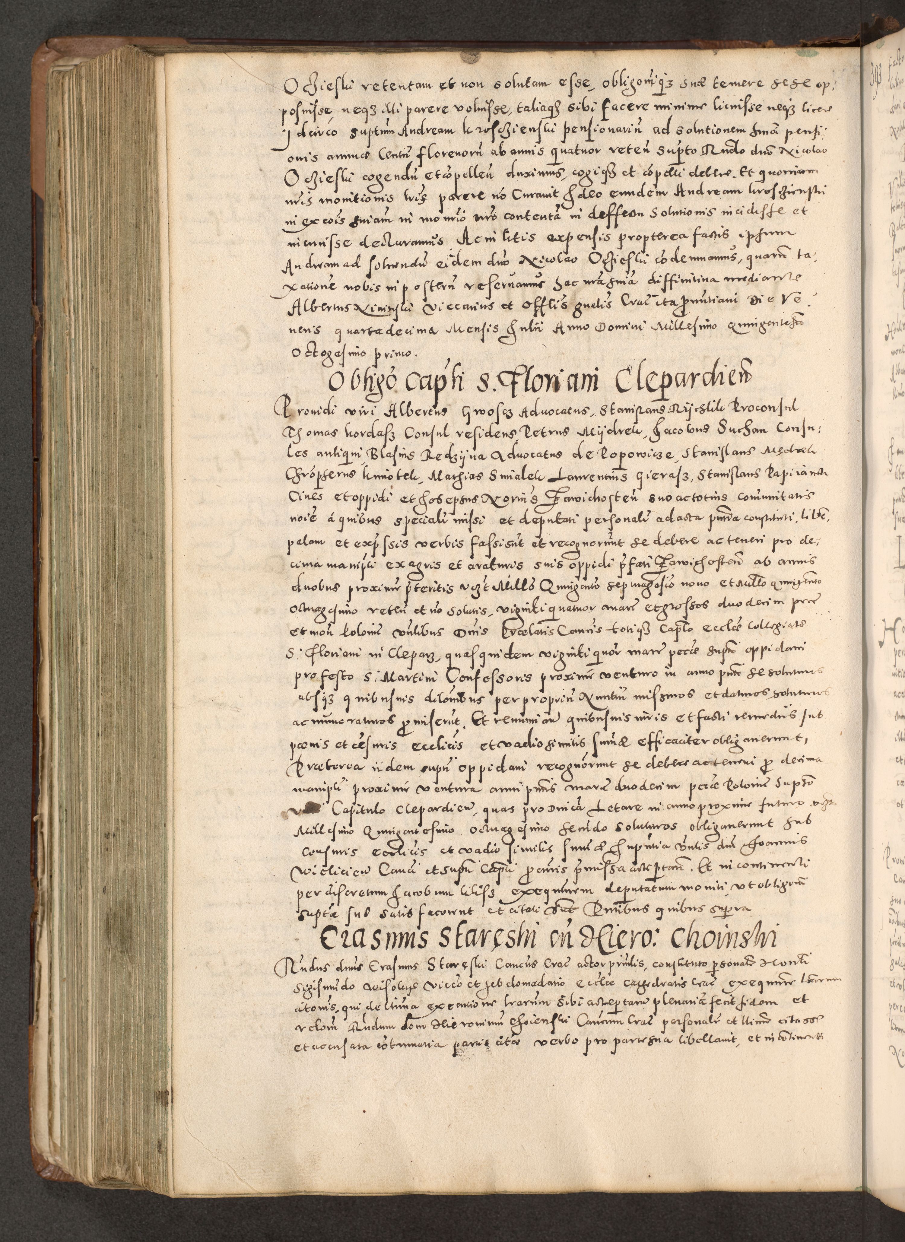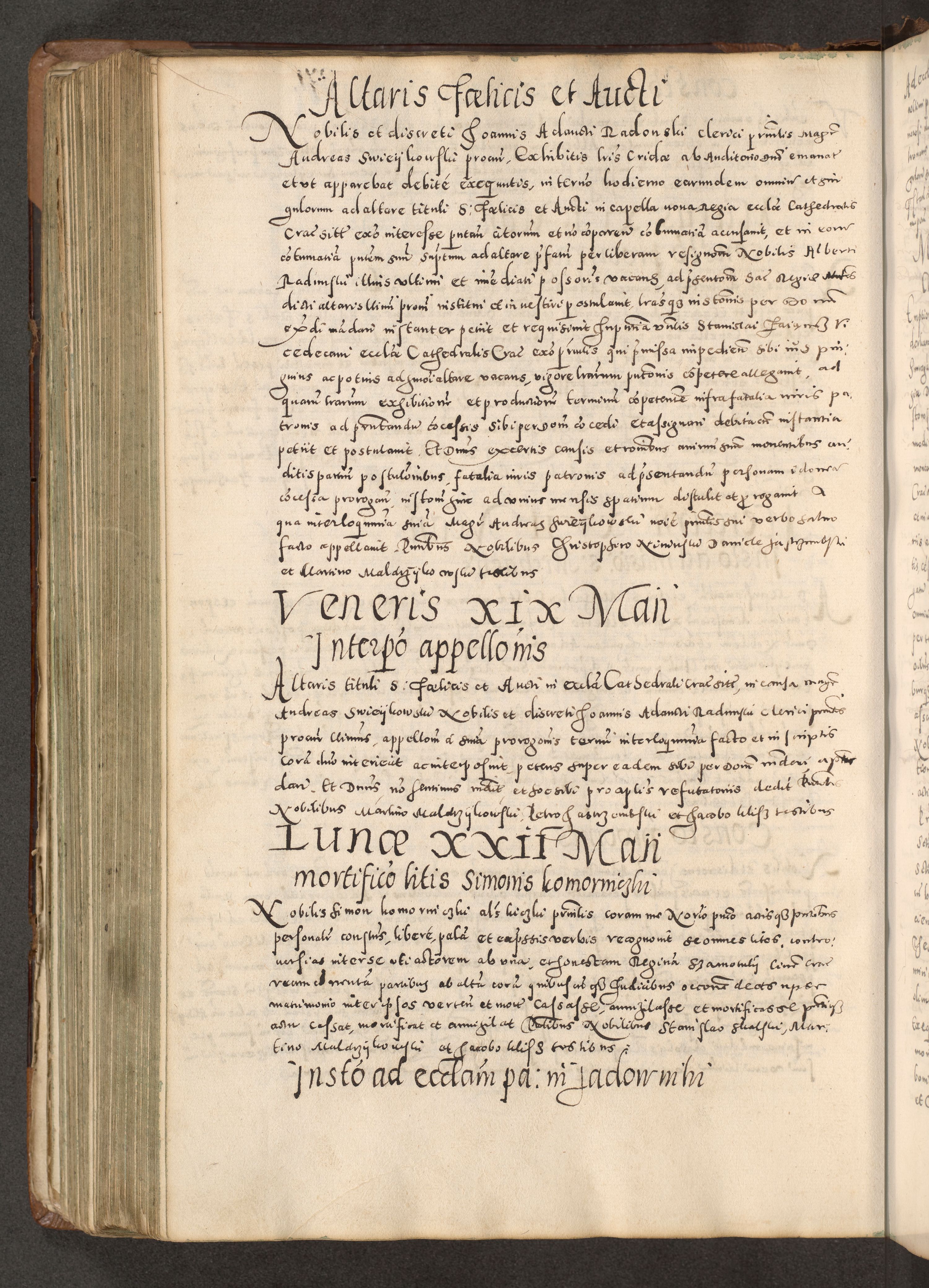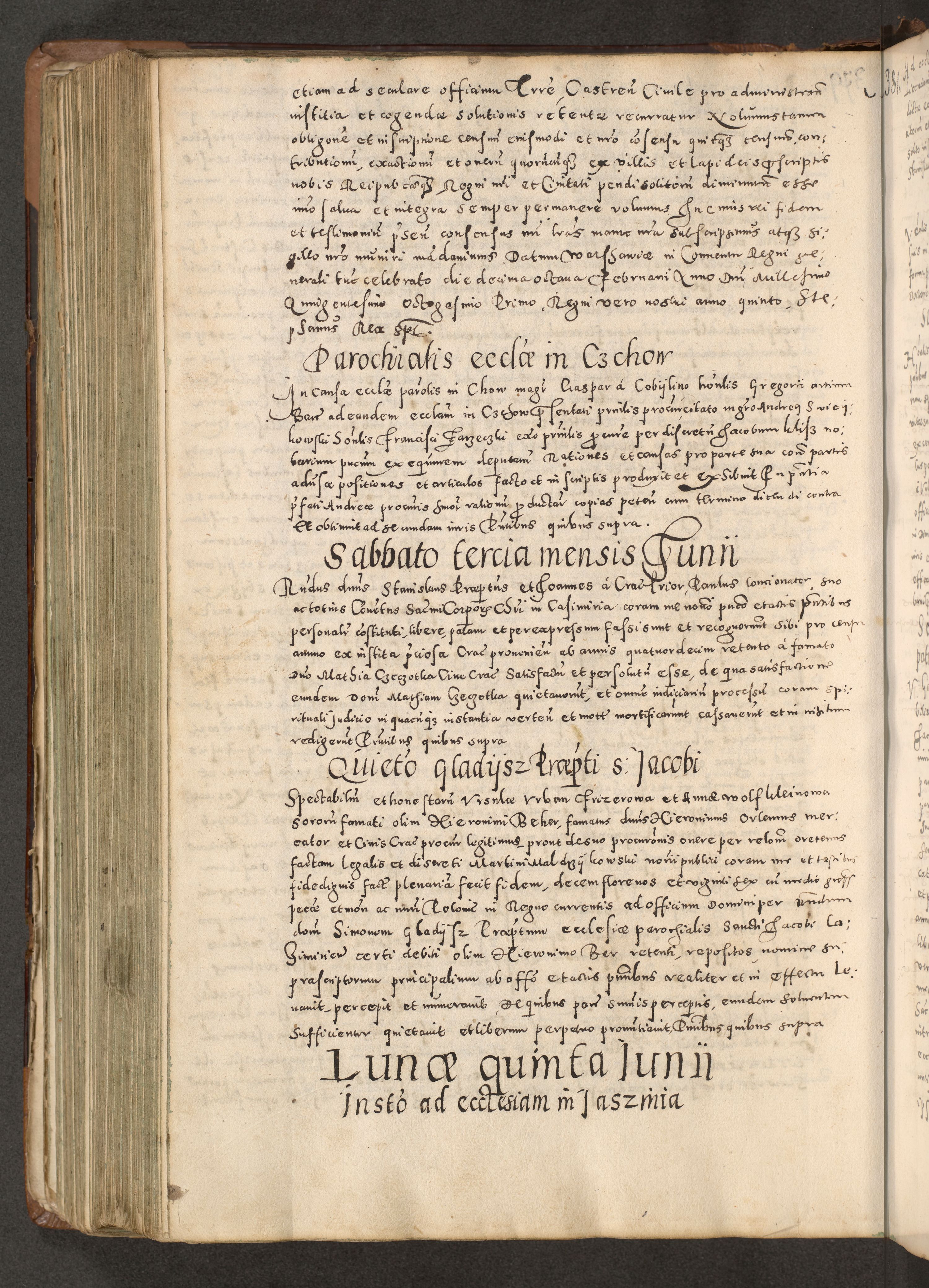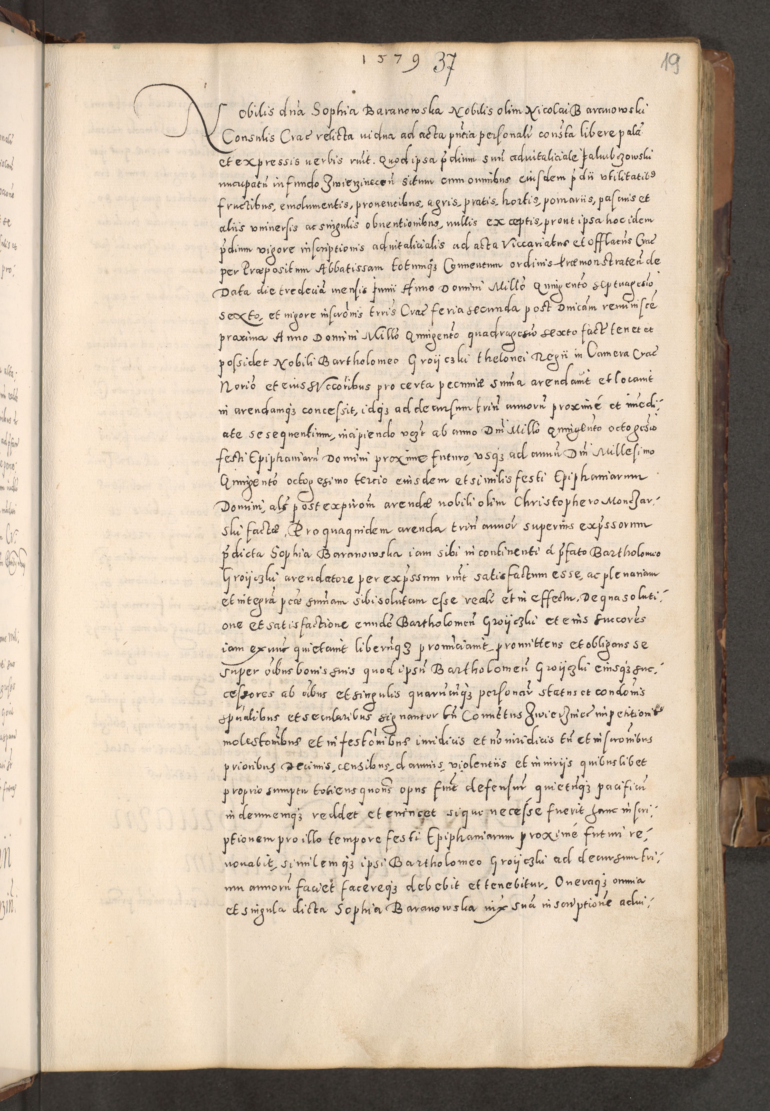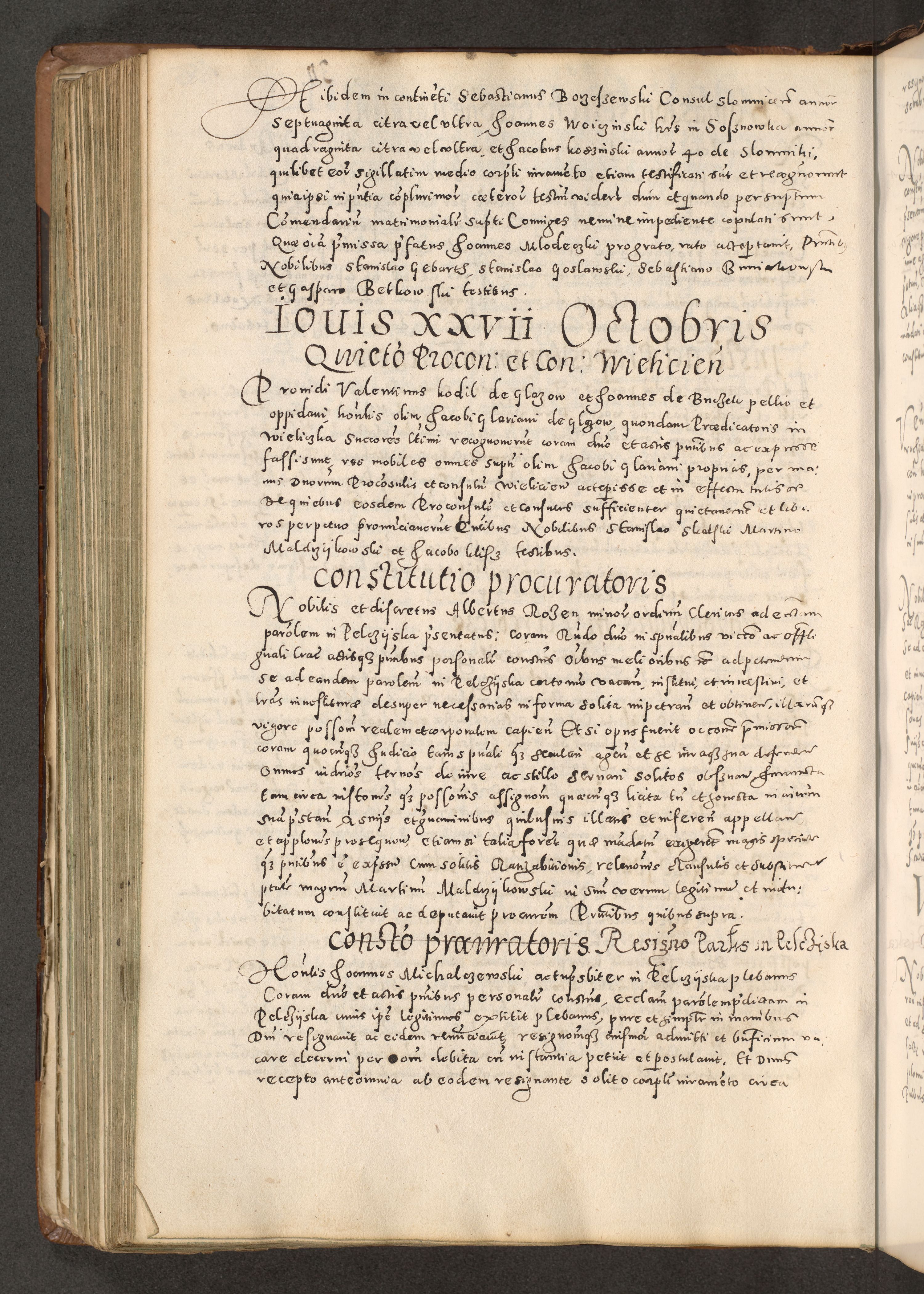 Acta actorum causarum tam diffinitivarum quam interloquutoriarum sententiarum decretorum obligationum quietatorum constuorum pro reverendum coram Reverendo Domino Alberto Nininski Custode Sandecensis Canonico et Archipresbitero Viccarioque in Spiritualibus ac Officiali Generali Cracoviensis ad Annum Domini Millesimum Qumgentesimum Septuagentesimum Nonum cuius Judictio septima Pontificat SS. nostri Domini Gregory pp. tredecimi Anno septimo inchoantur faliciter