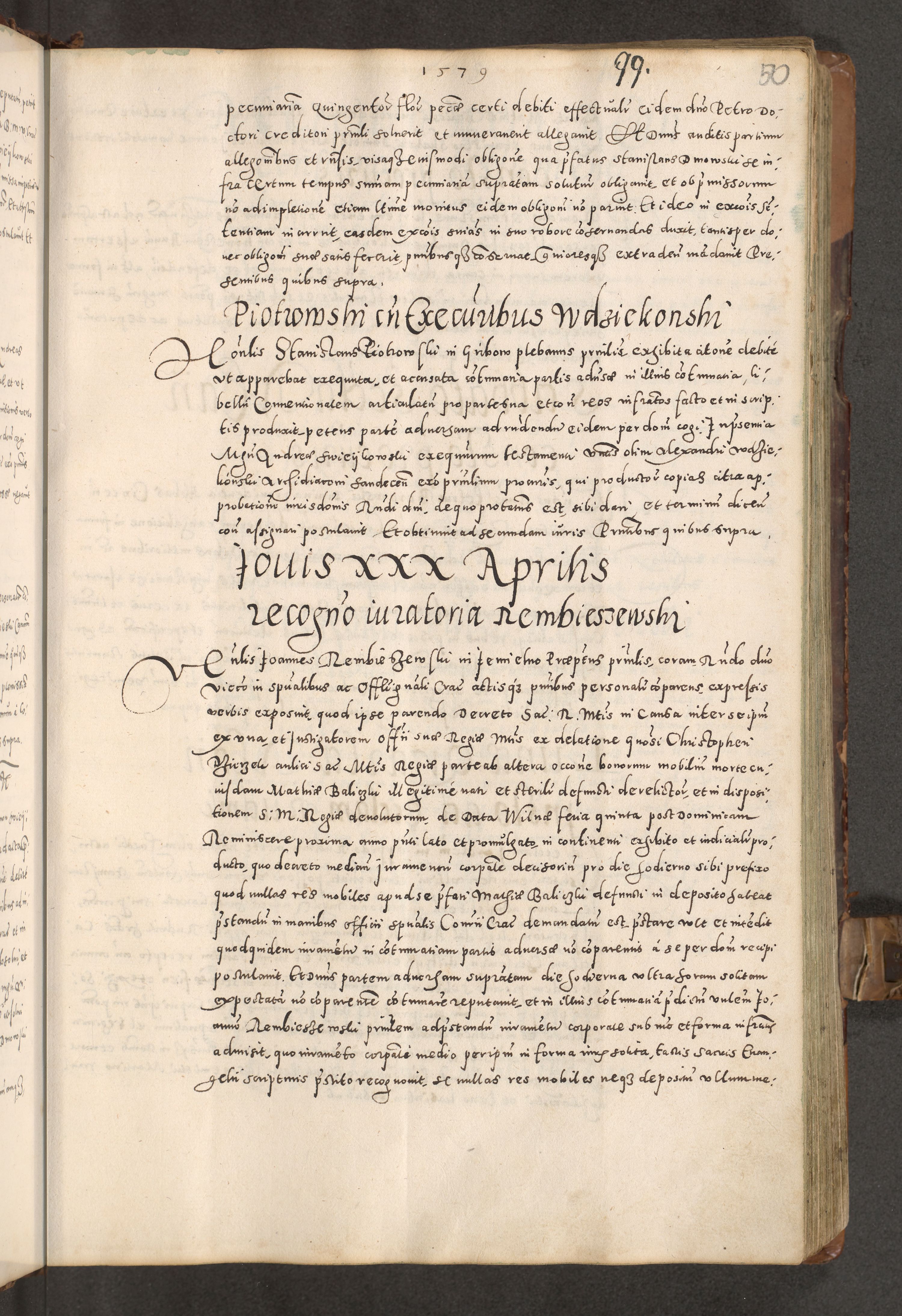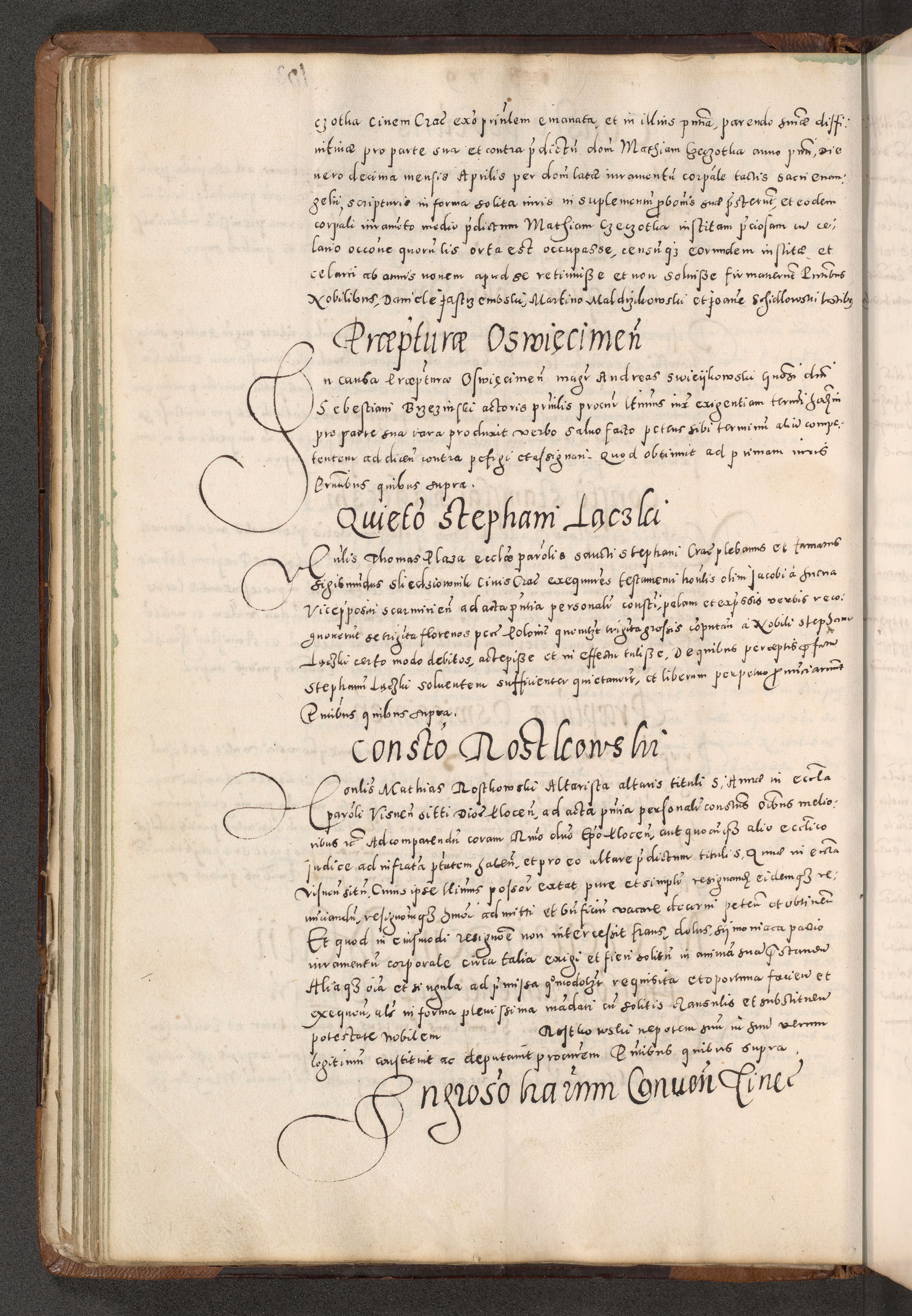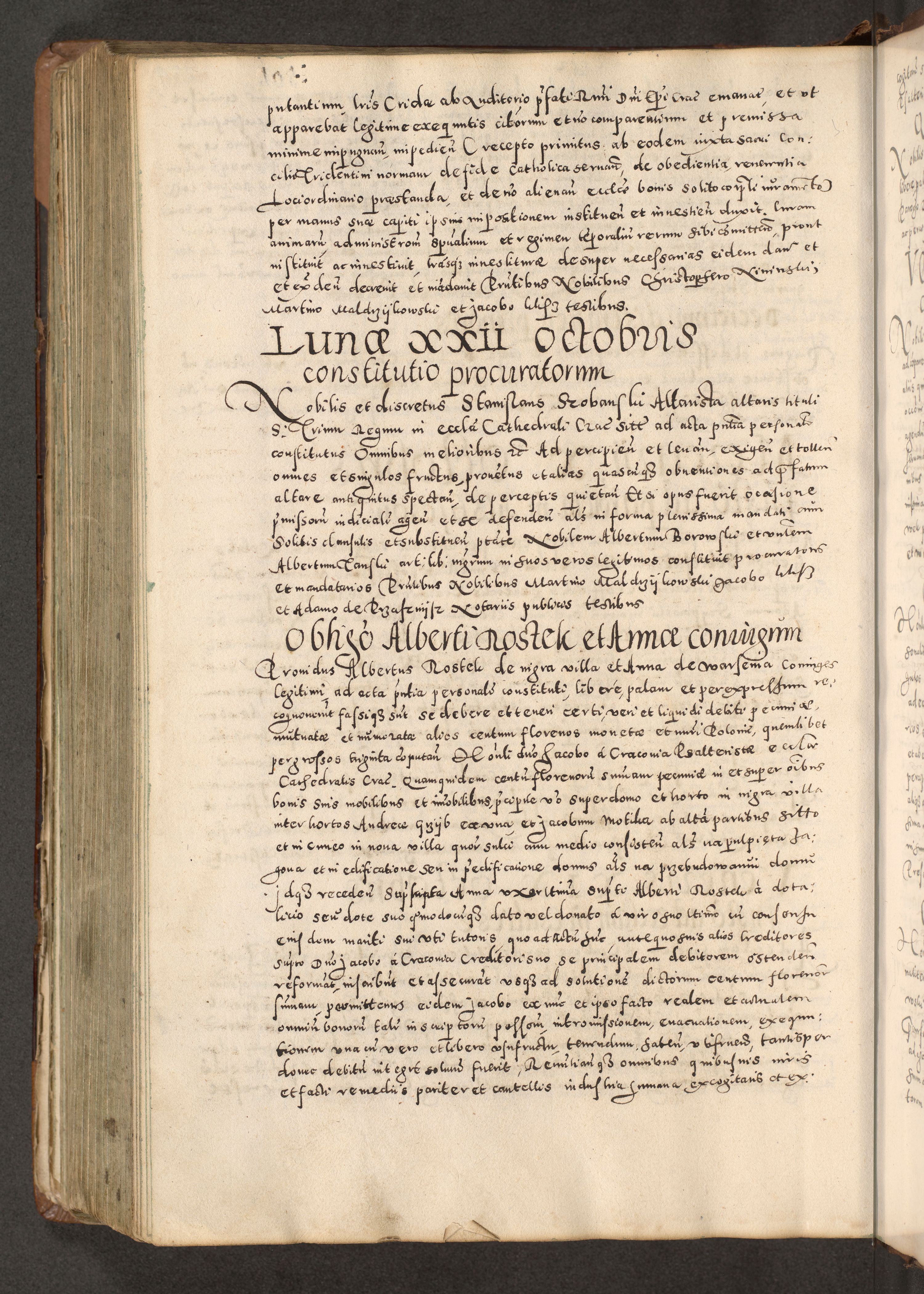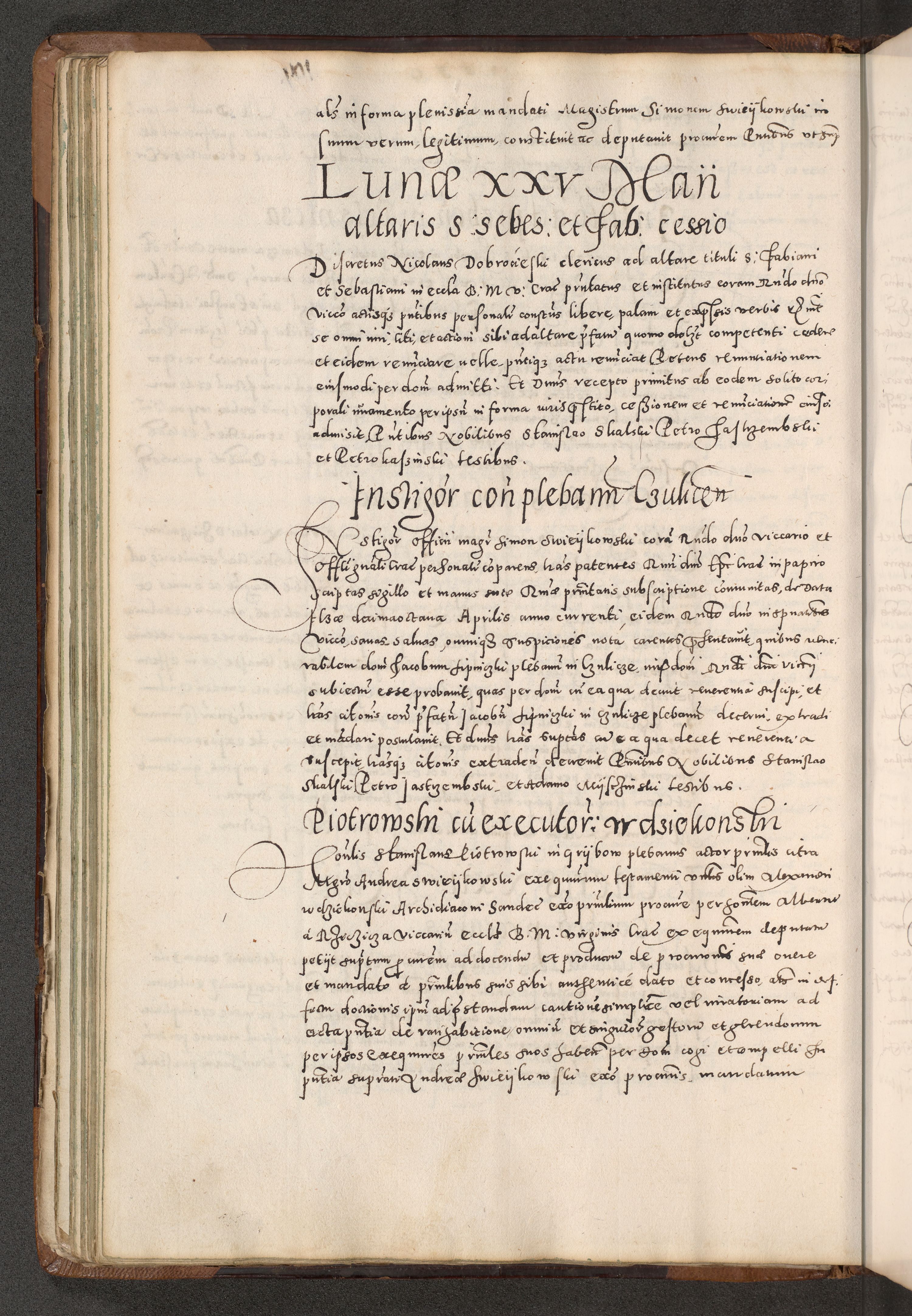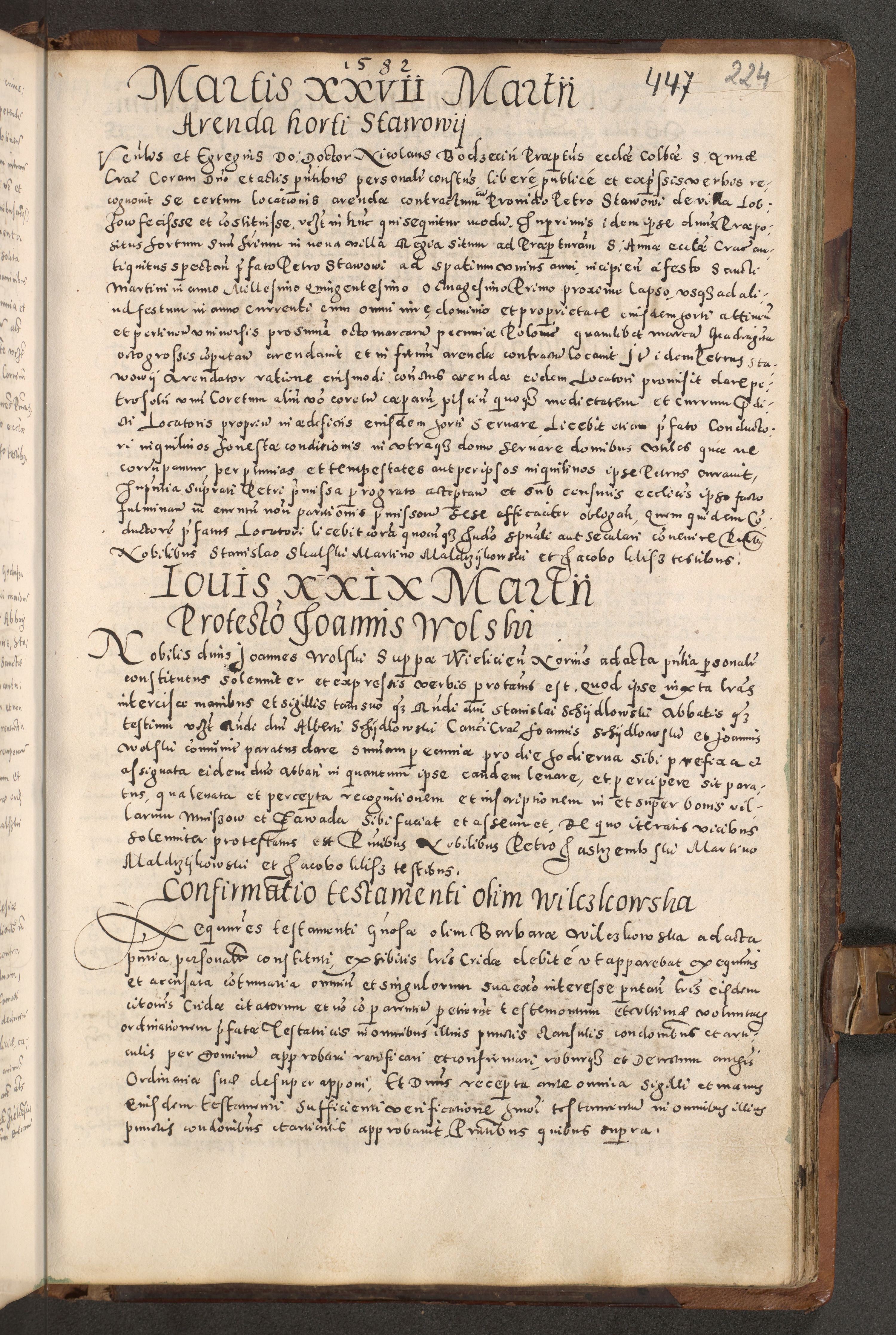Acta actorum causarum tam diffinitivarum quam interloquutoriarum sententiarum decretorum obligationum quietatorum constuorum pro reverendum coram Reverendo Domino Alberto Nininski Custode Sandecensis Canonico et Archipresbitero Viccarioque in Spiritualibus ac Officiali Generali Cracoviensis ad Annum Domini Millesimum Qumgentesimum Septuagentesimum Nonum cuius Judictio septima Pontificat SS. nostri Domini Gregory pp. tredecimi Anno septimo inchoantur faliciter