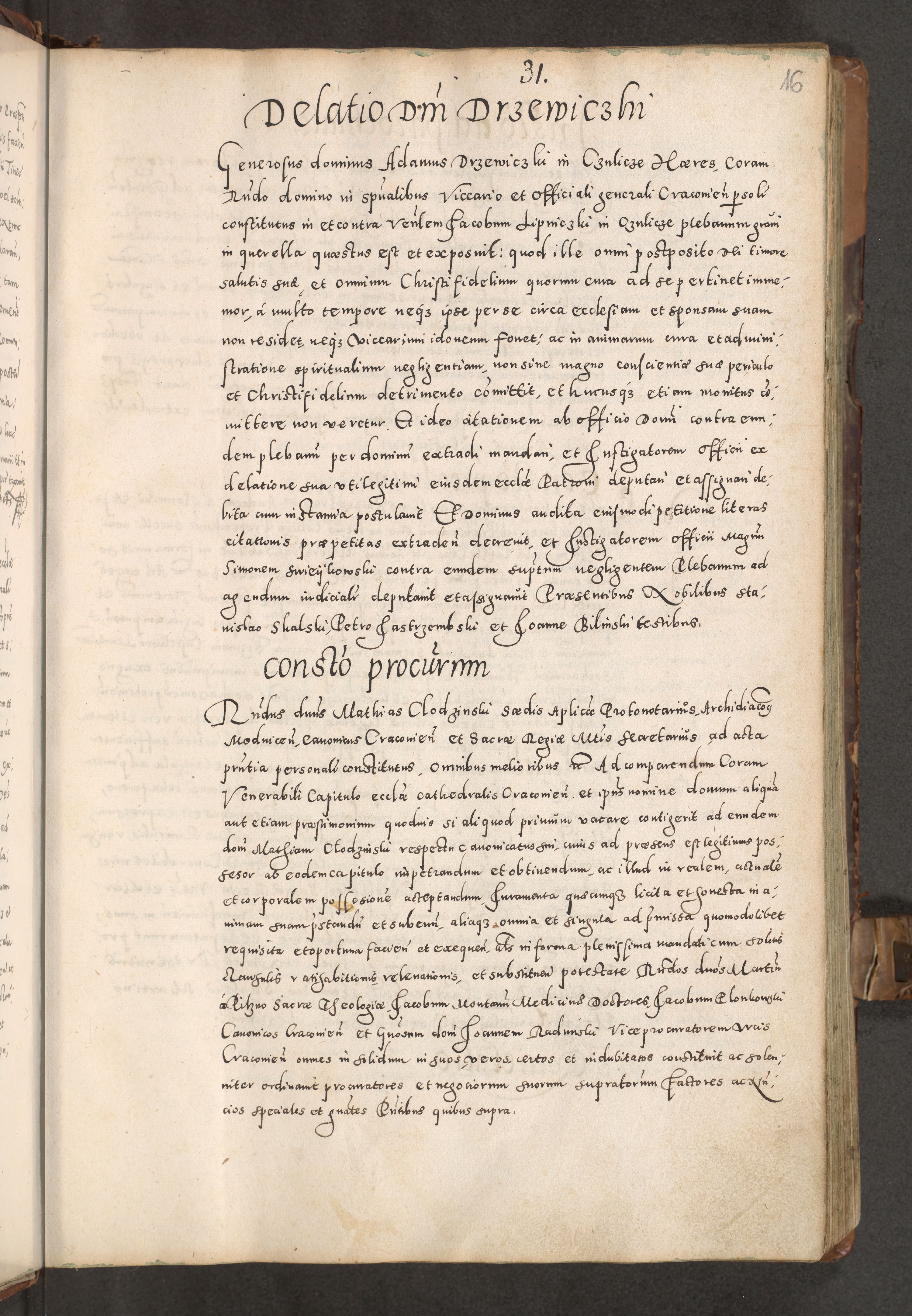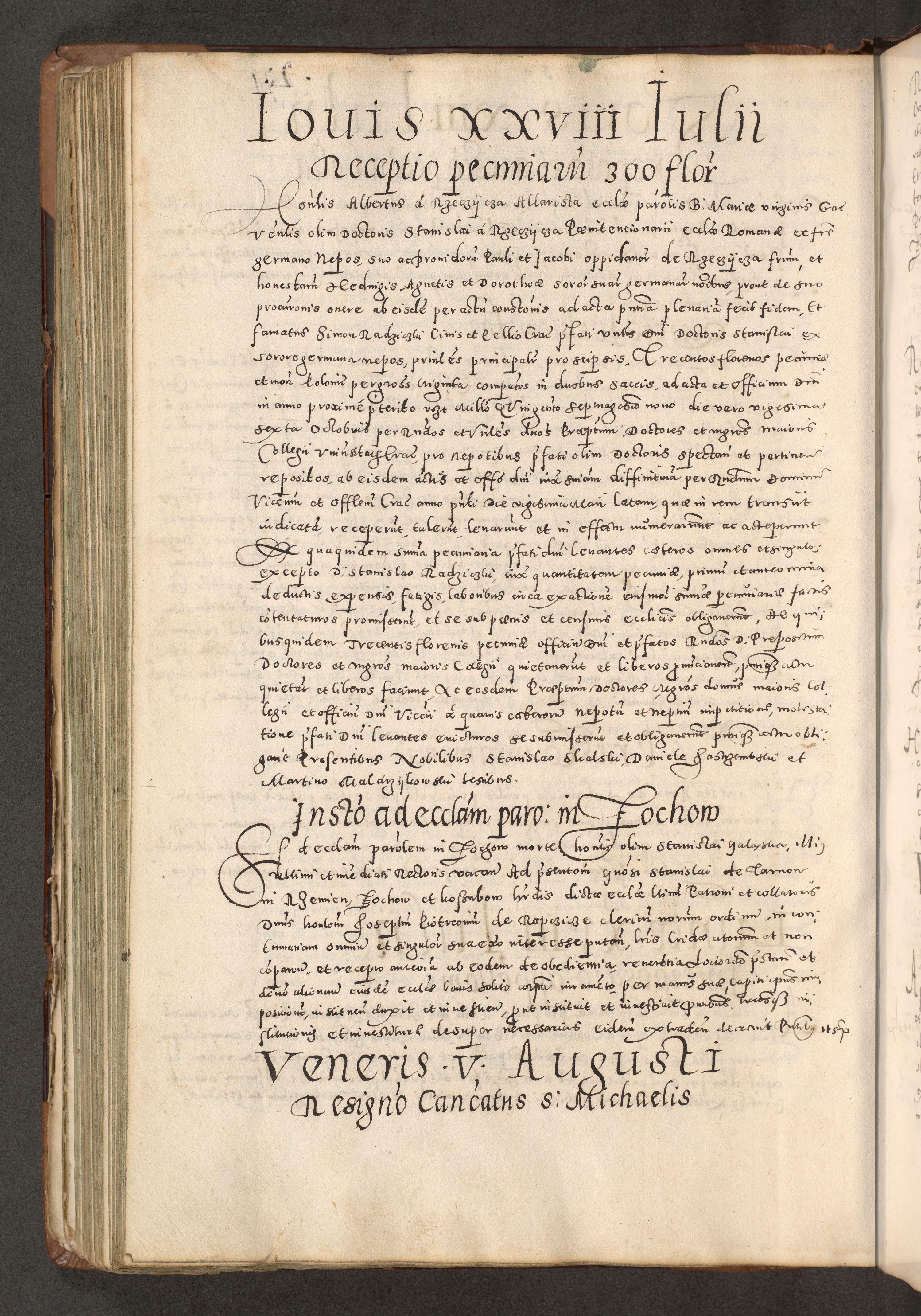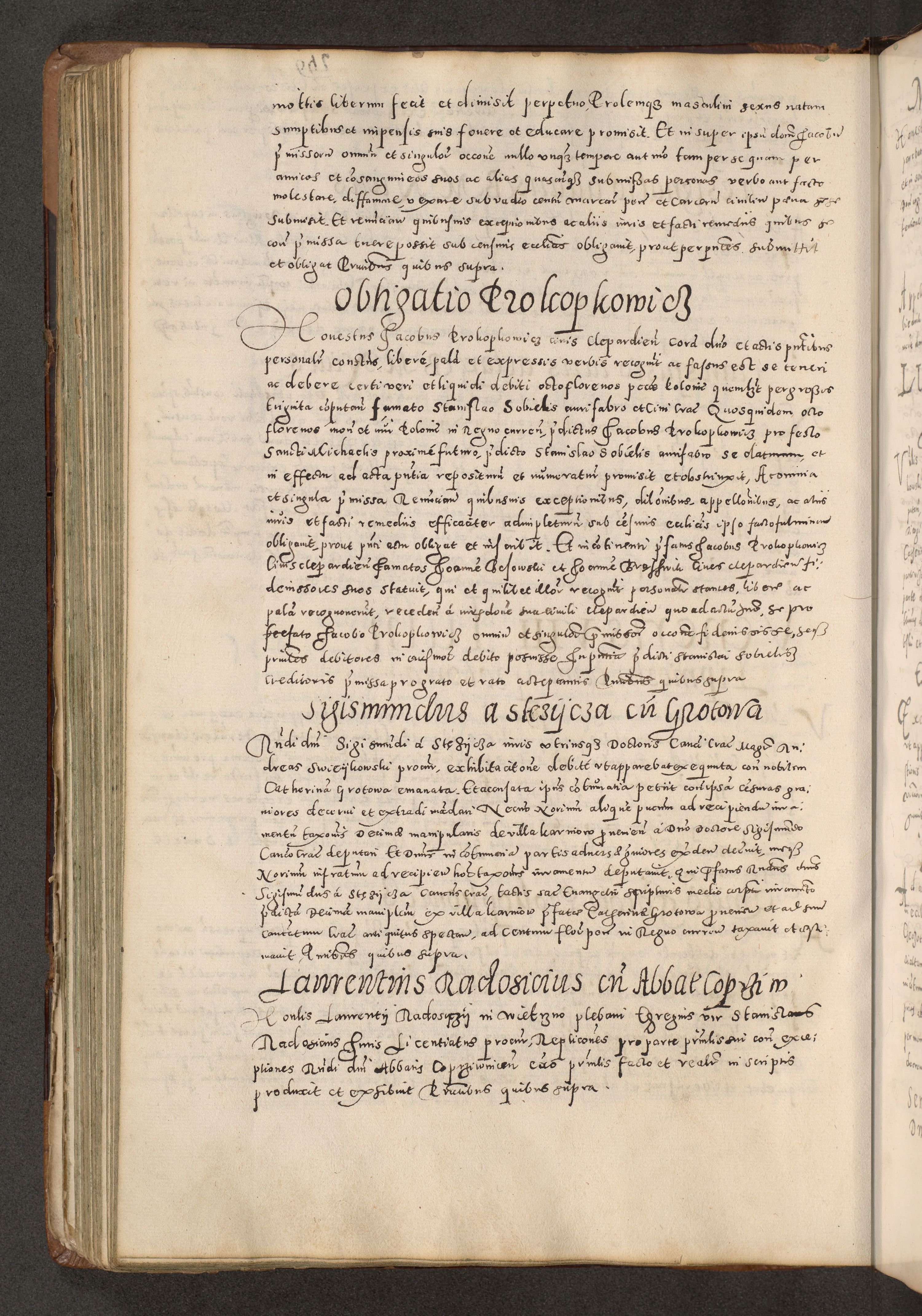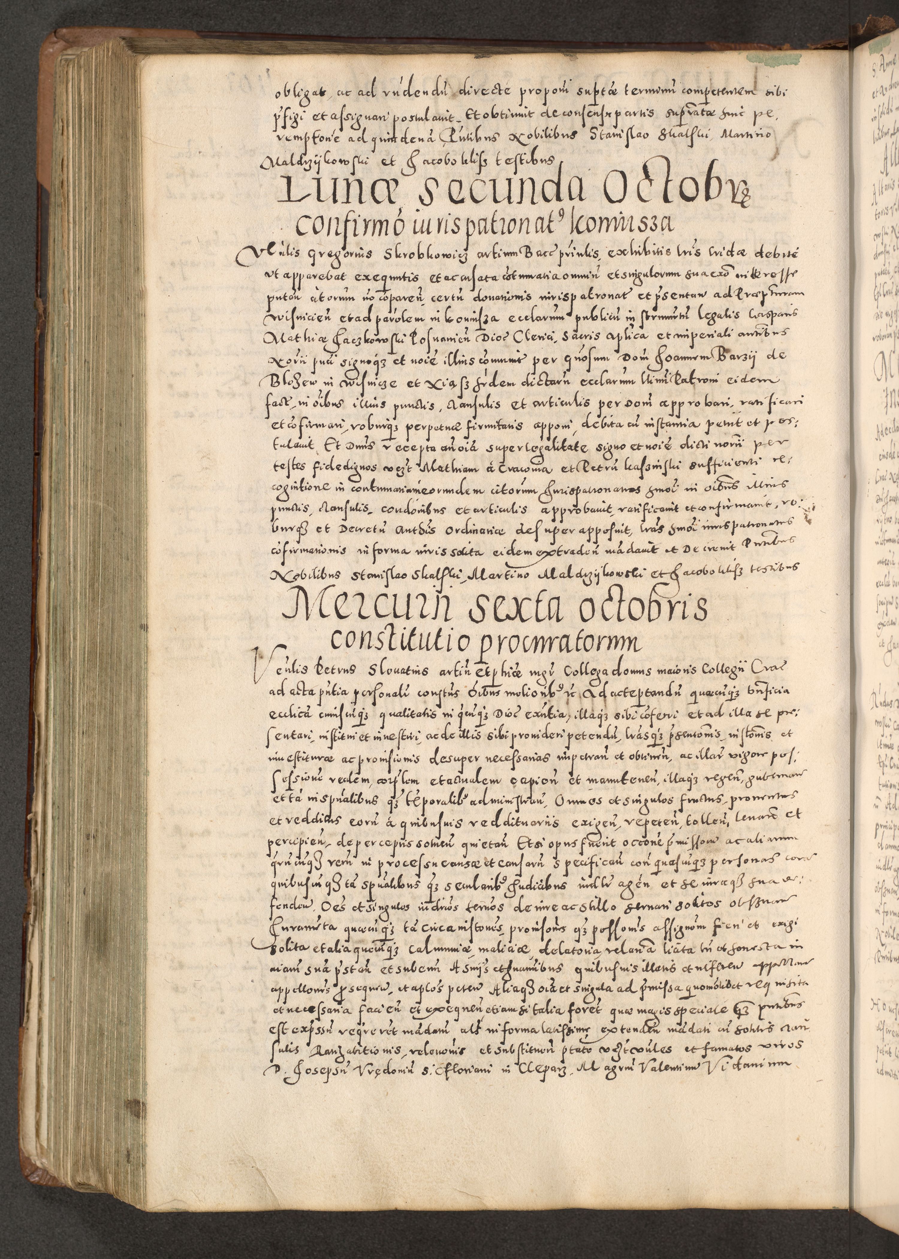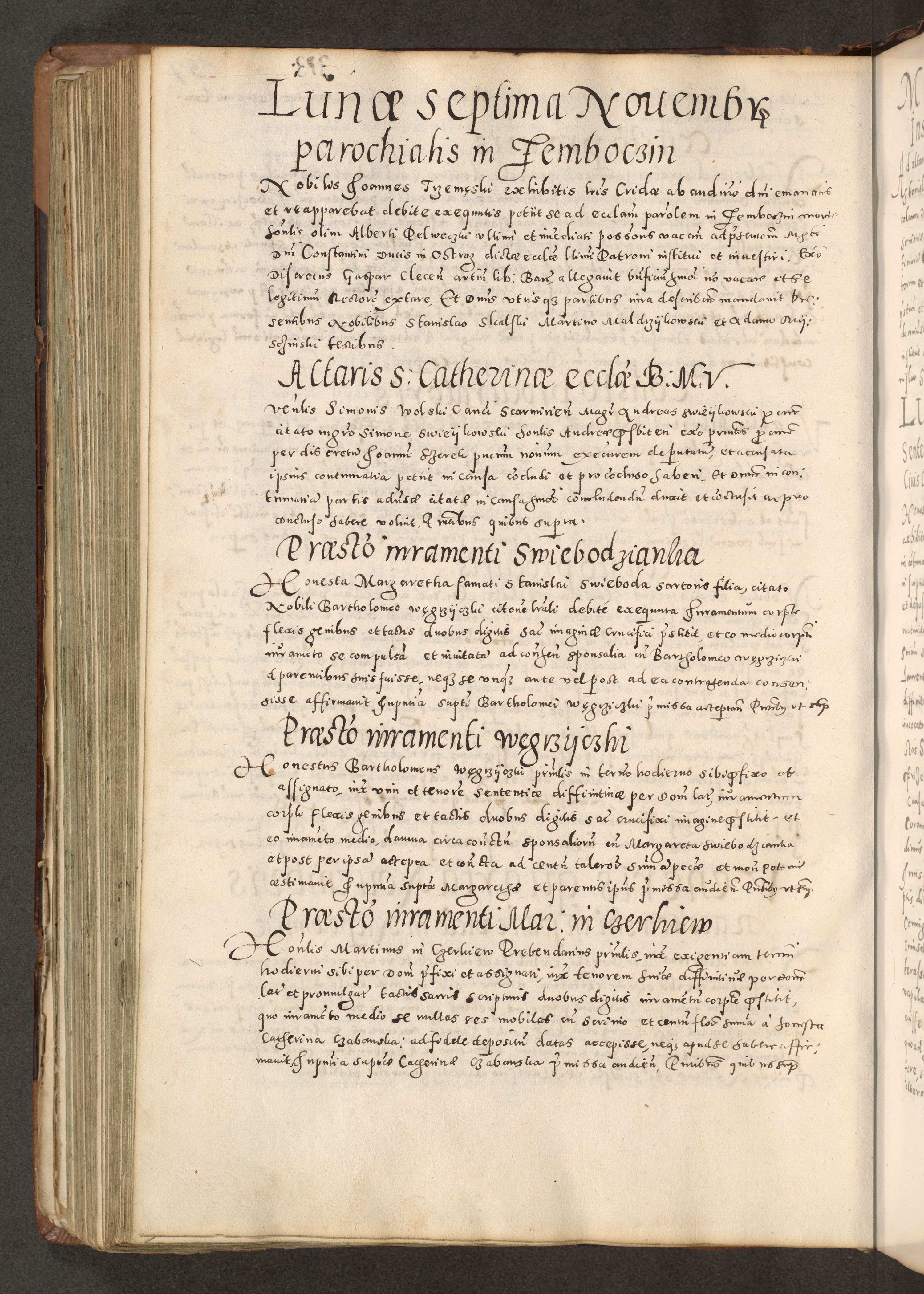 Acta actorum causarum tam diffinitivarum quam interloquutoriarum sententiarum decretorum obligationum quietatorum constuorum pro reverendum coram Reverendo Domino Alberto Nininski Custode Sandecensis Canonico et Archipresbitero Viccarioque in Spiritualibus ac Officiali Generali Cracoviensis ad Annum Domini Millesimum Qumgentesimum Septuagentesimum Nonum cuius Judictio septima Pontificat SS. nostri Domini Gregory pp. tredecimi Anno septimo inchoantur faliciter