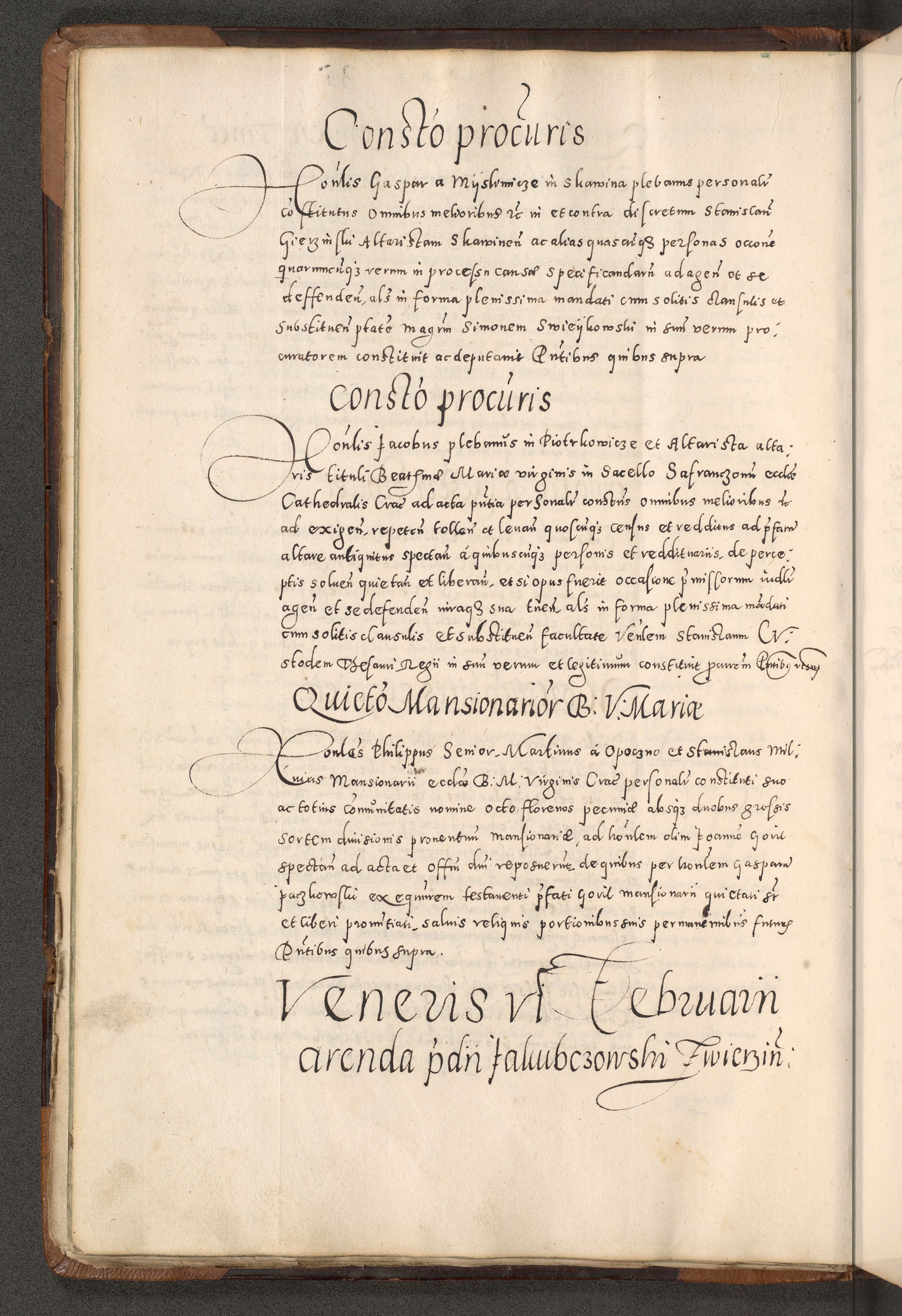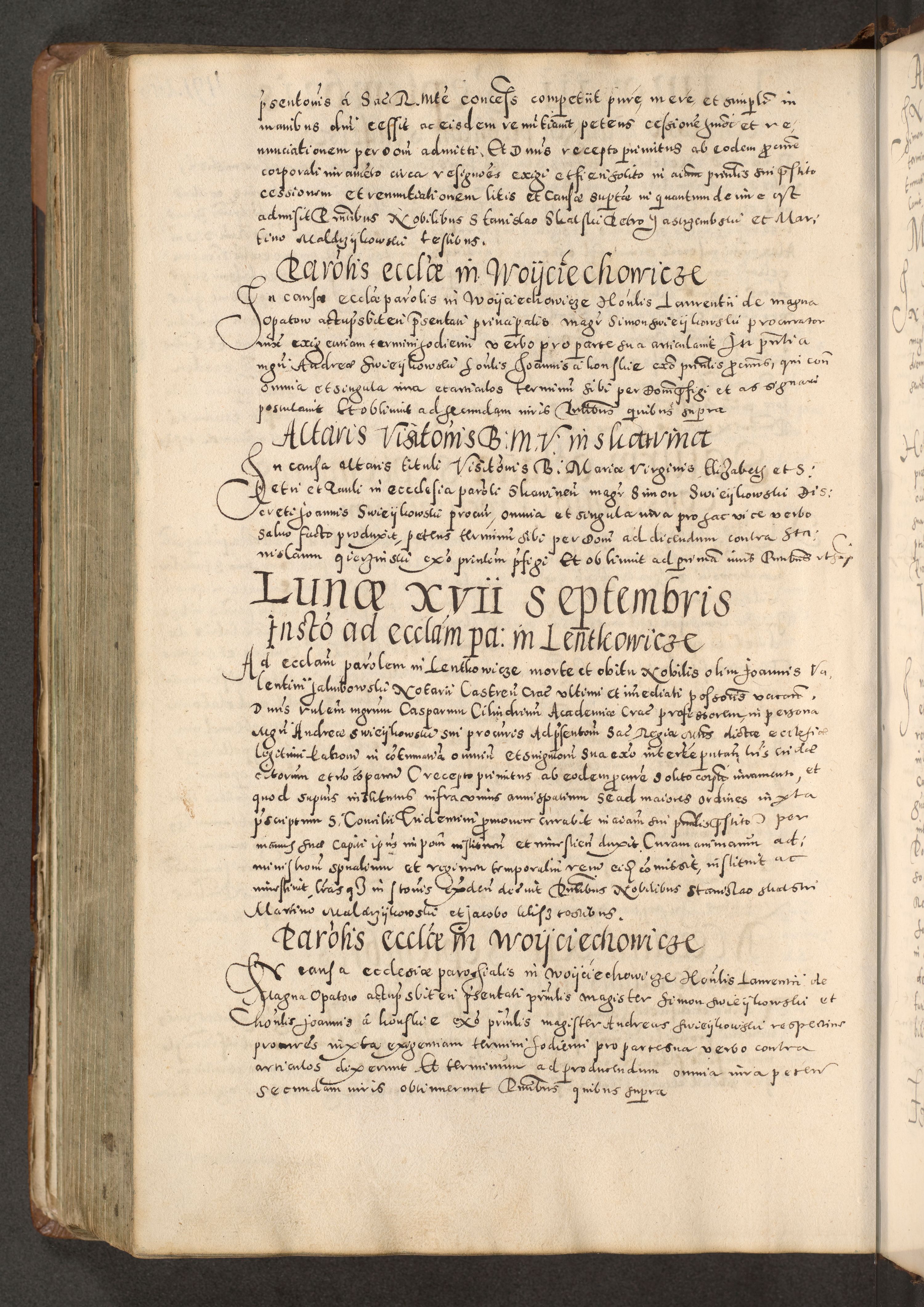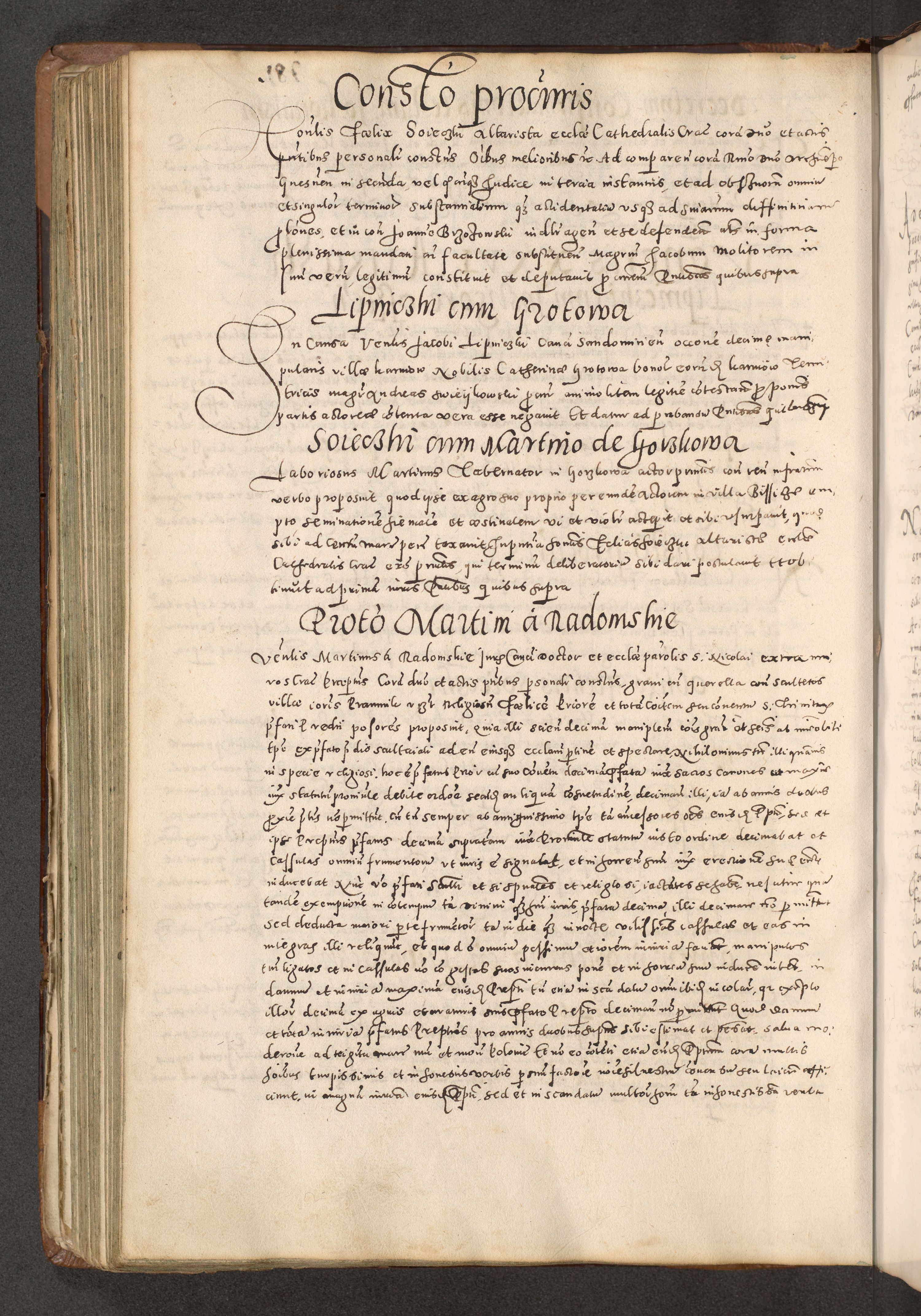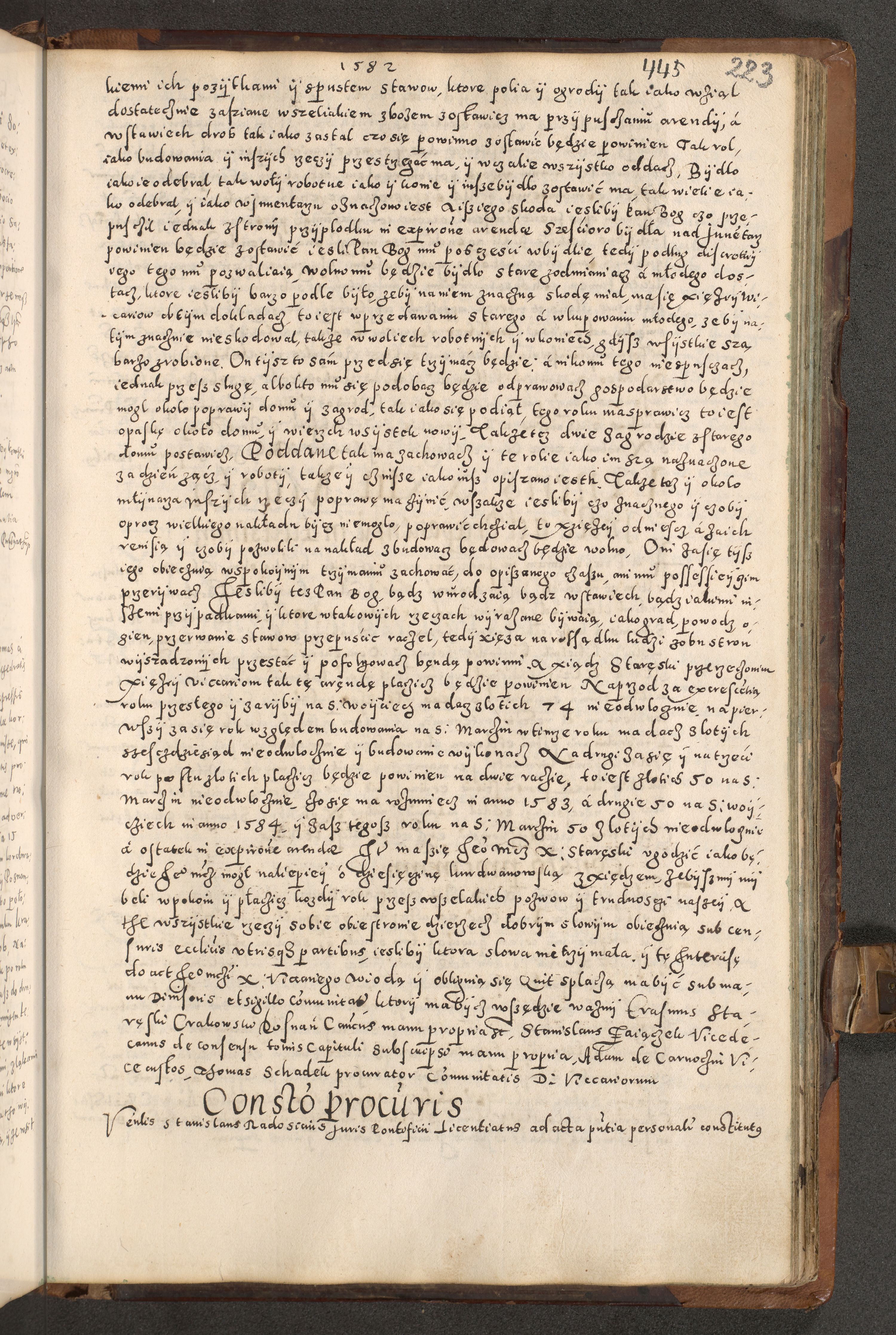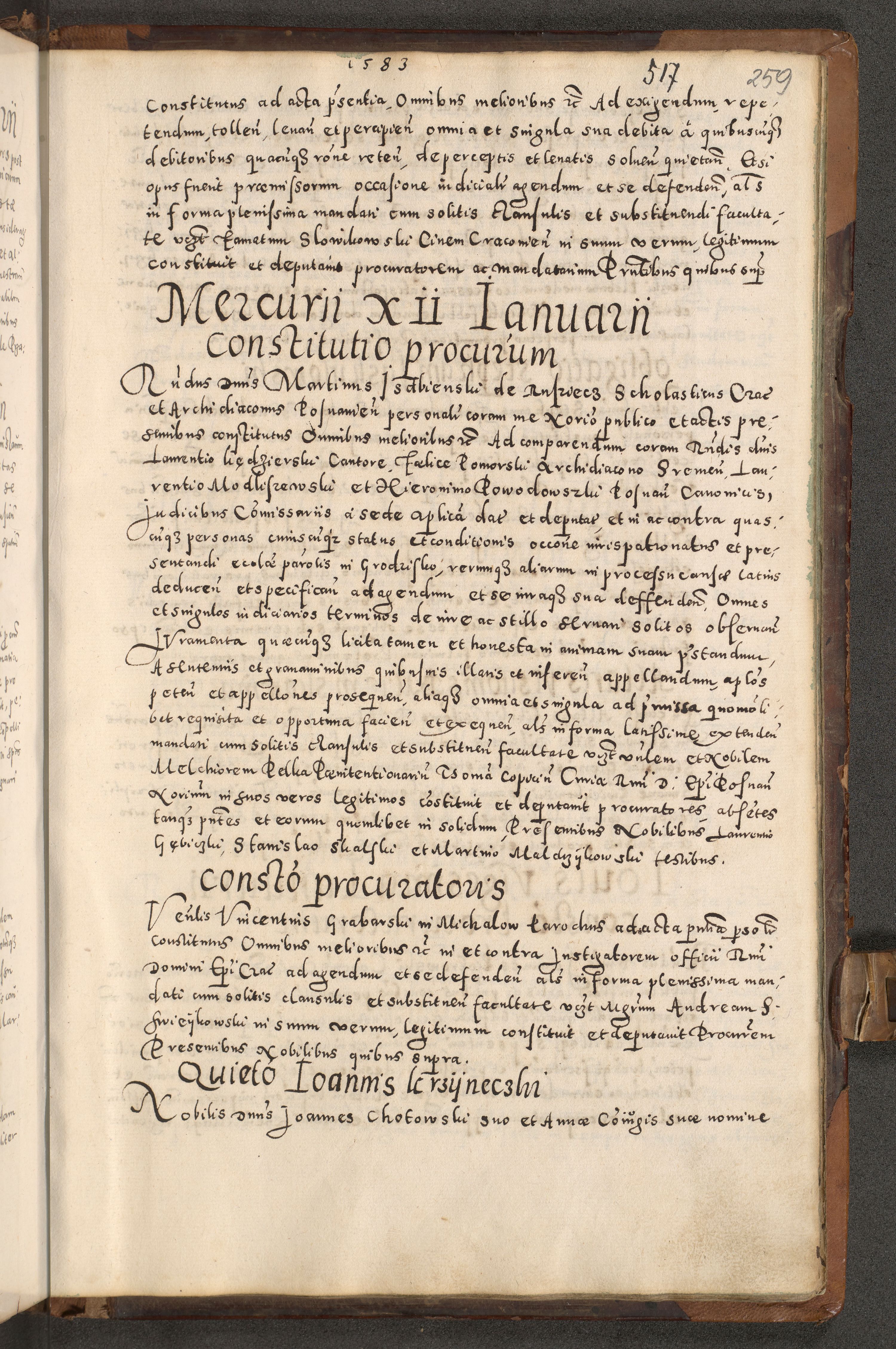 Acta actorum causarum tam diffinitivarum quam interloquutoriarum sententiarum decretorum obligationum quietatorum constuorum pro reverendum coram Reverendo Domino Alberto Nininski Custode Sandecensis Canonico et Archipresbitero Viccarioque in Spiritualibus ac Officiali Generali Cracoviensis ad Annum Domini Millesimum Qumgentesimum Septuagentesimum Nonum cuius Judictio septima Pontificat SS. nostri Domini Gregory pp. tredecimi Anno septimo inchoantur faliciter