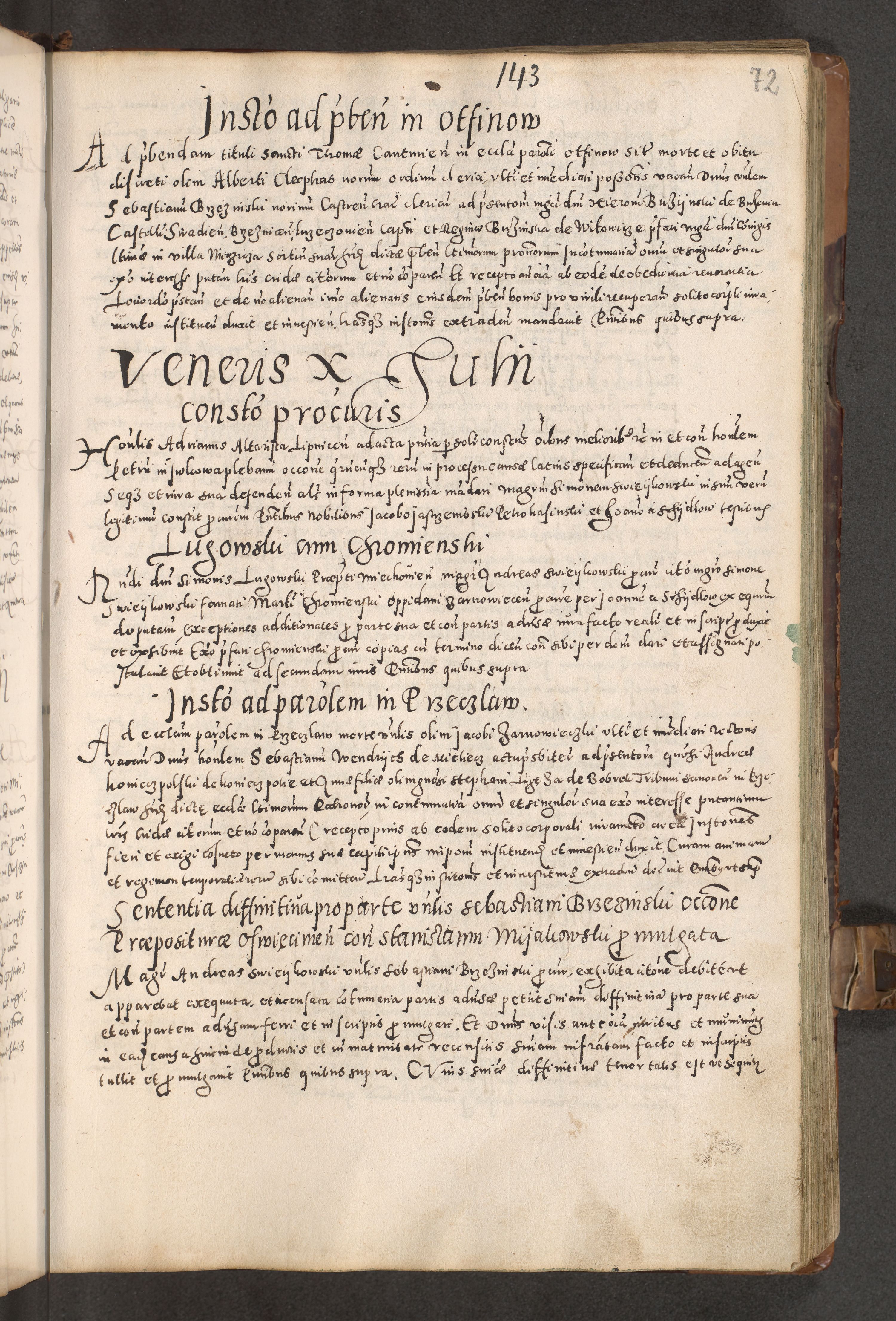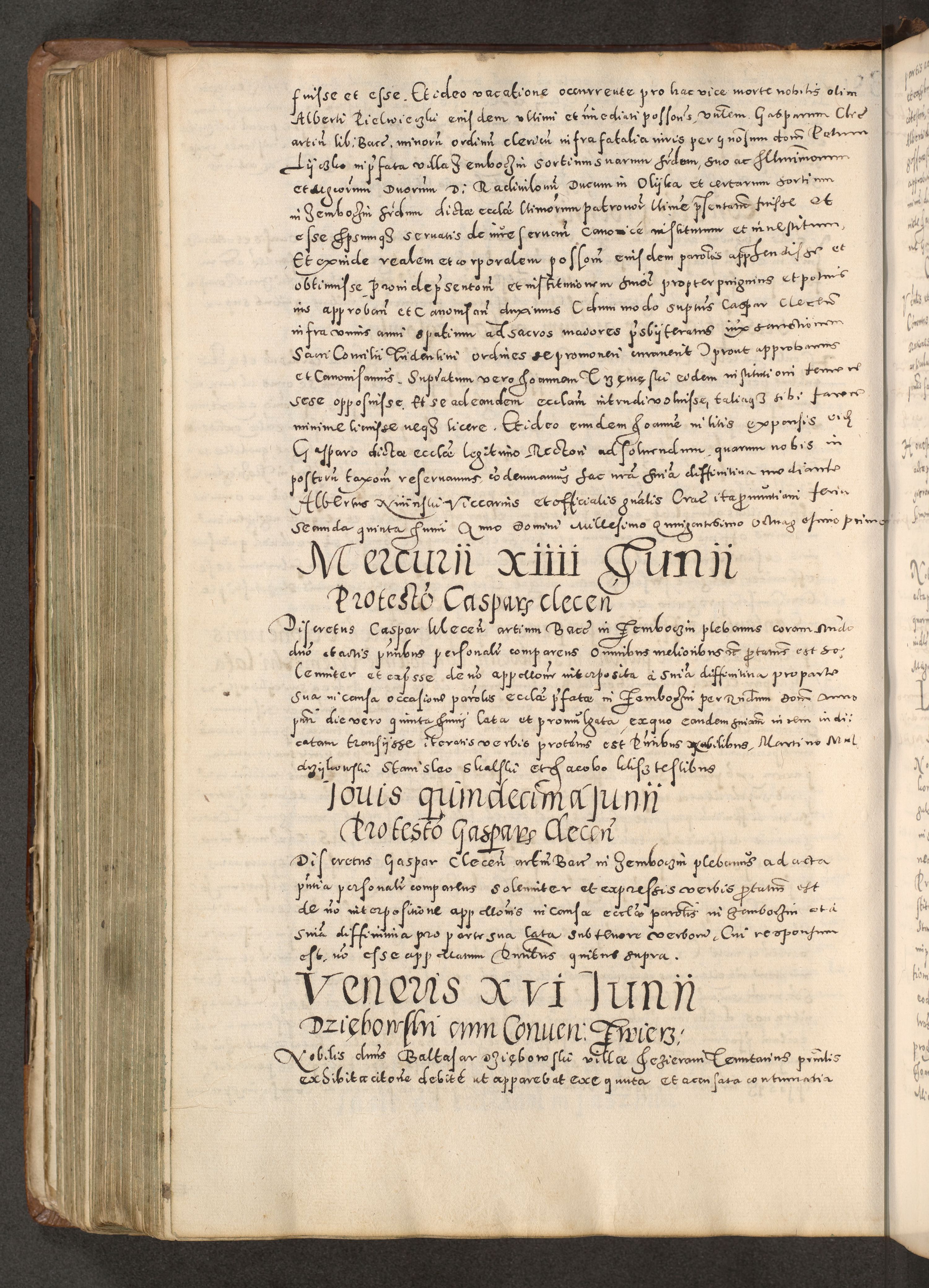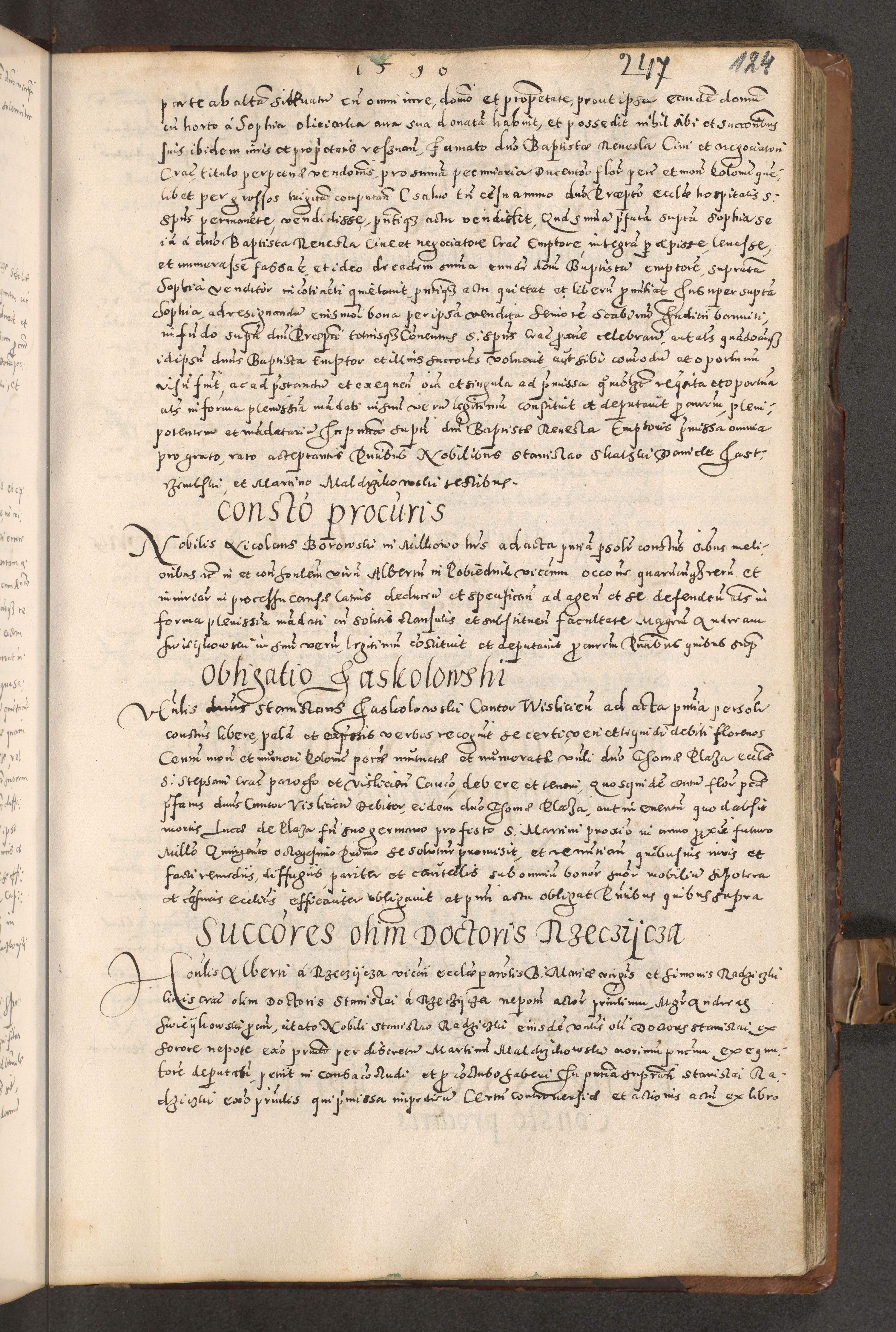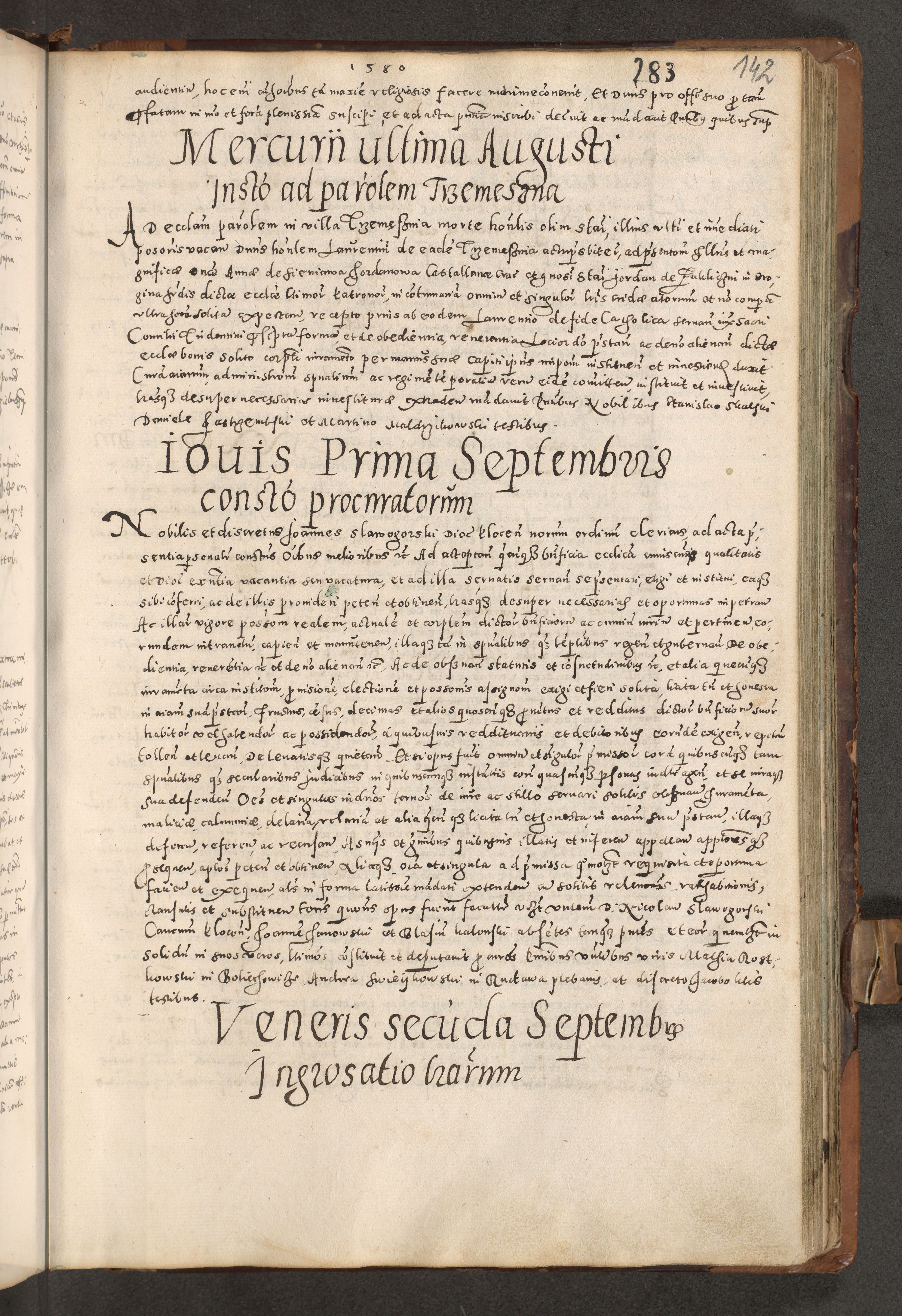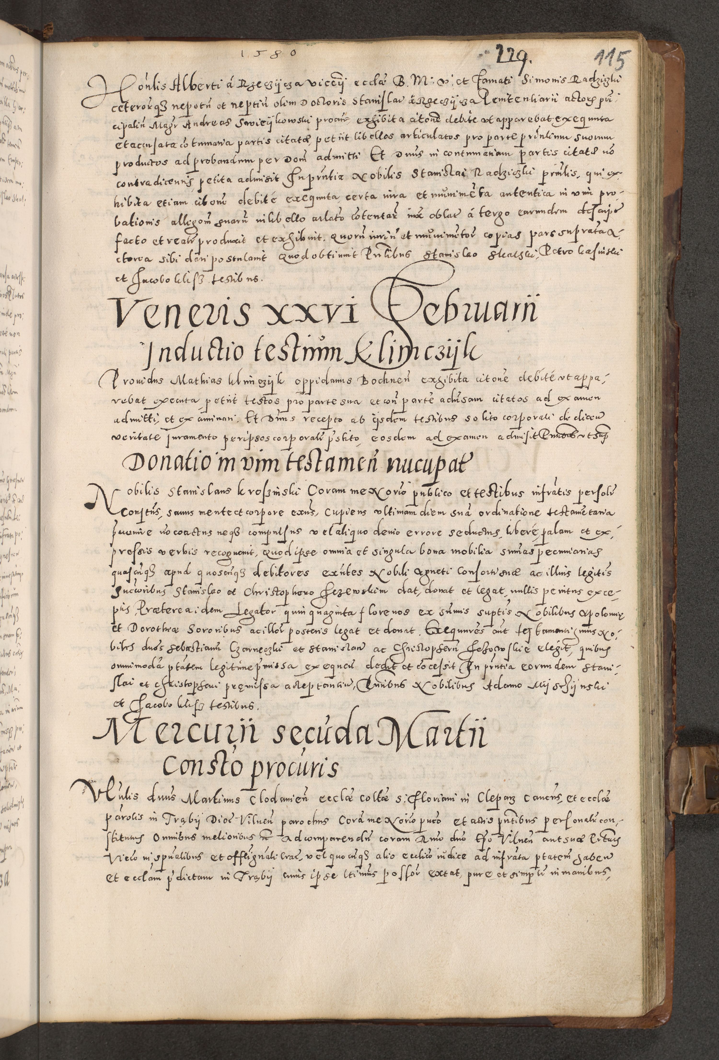 Acta actorum causarum tam diffinitivarum quam interloquutoriarum sententiarum decretorum obligationum quietatorum constuorum pro reverendum coram Reverendo Domino Alberto Nininski Custode Sandecensis Canonico et Archipresbitero Viccarioque in Spiritualibus ac Officiali Generali Cracoviensis ad Annum Domini Millesimum Qumgentesimum Septuagentesimum Nonum cuius Judictio septima Pontificat SS. nostri Domini Gregory pp. tredecimi Anno septimo inchoantur faliciter