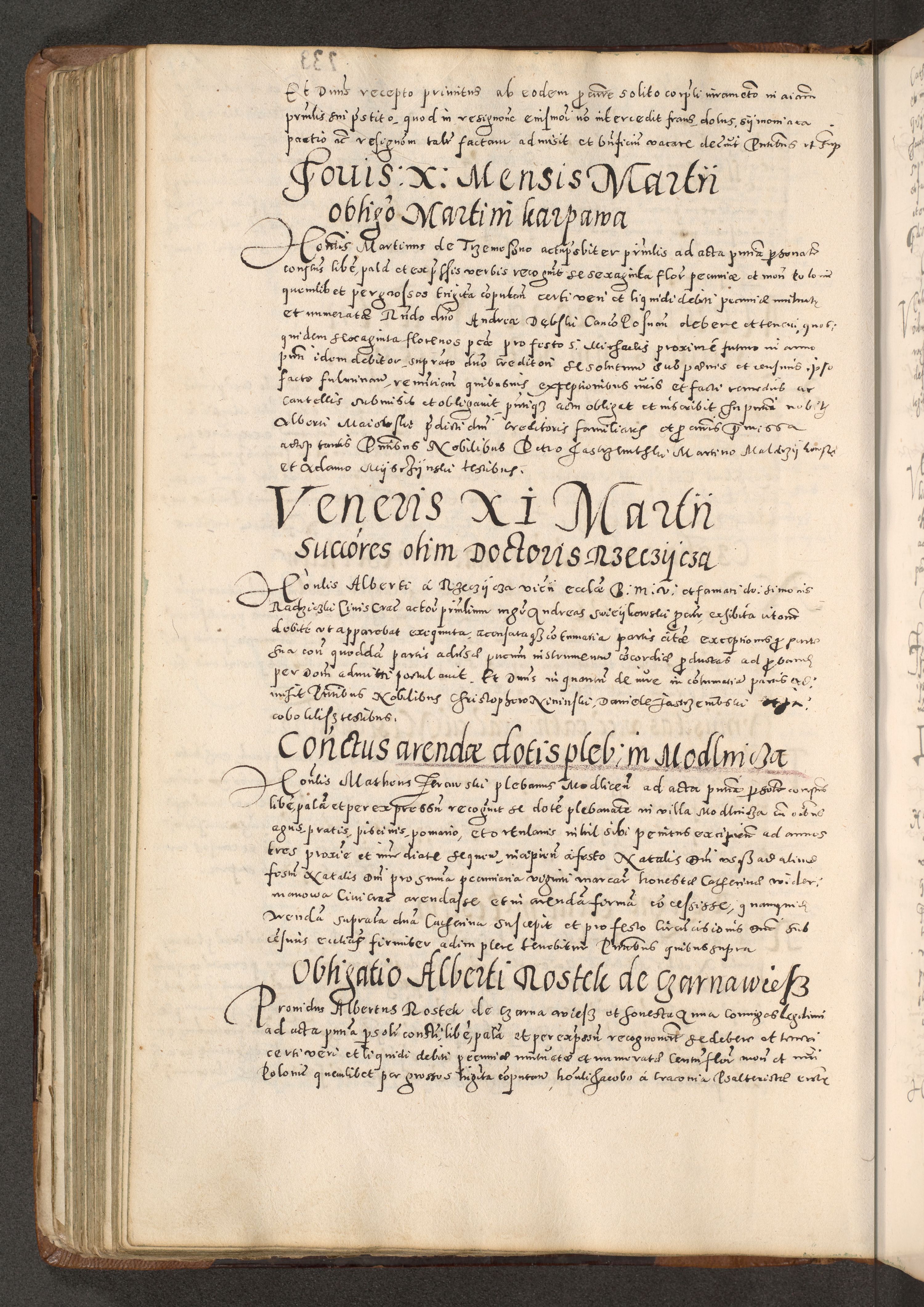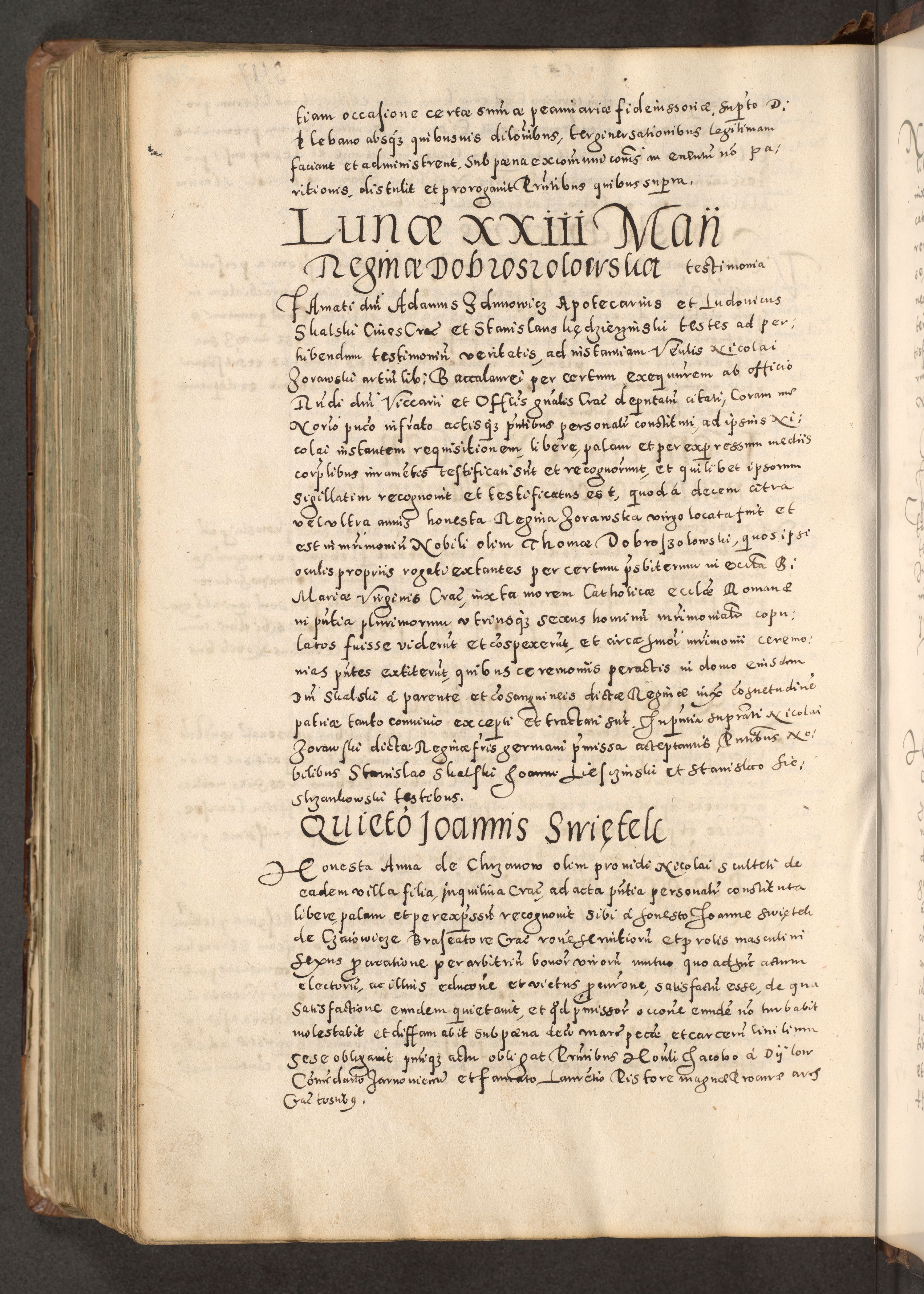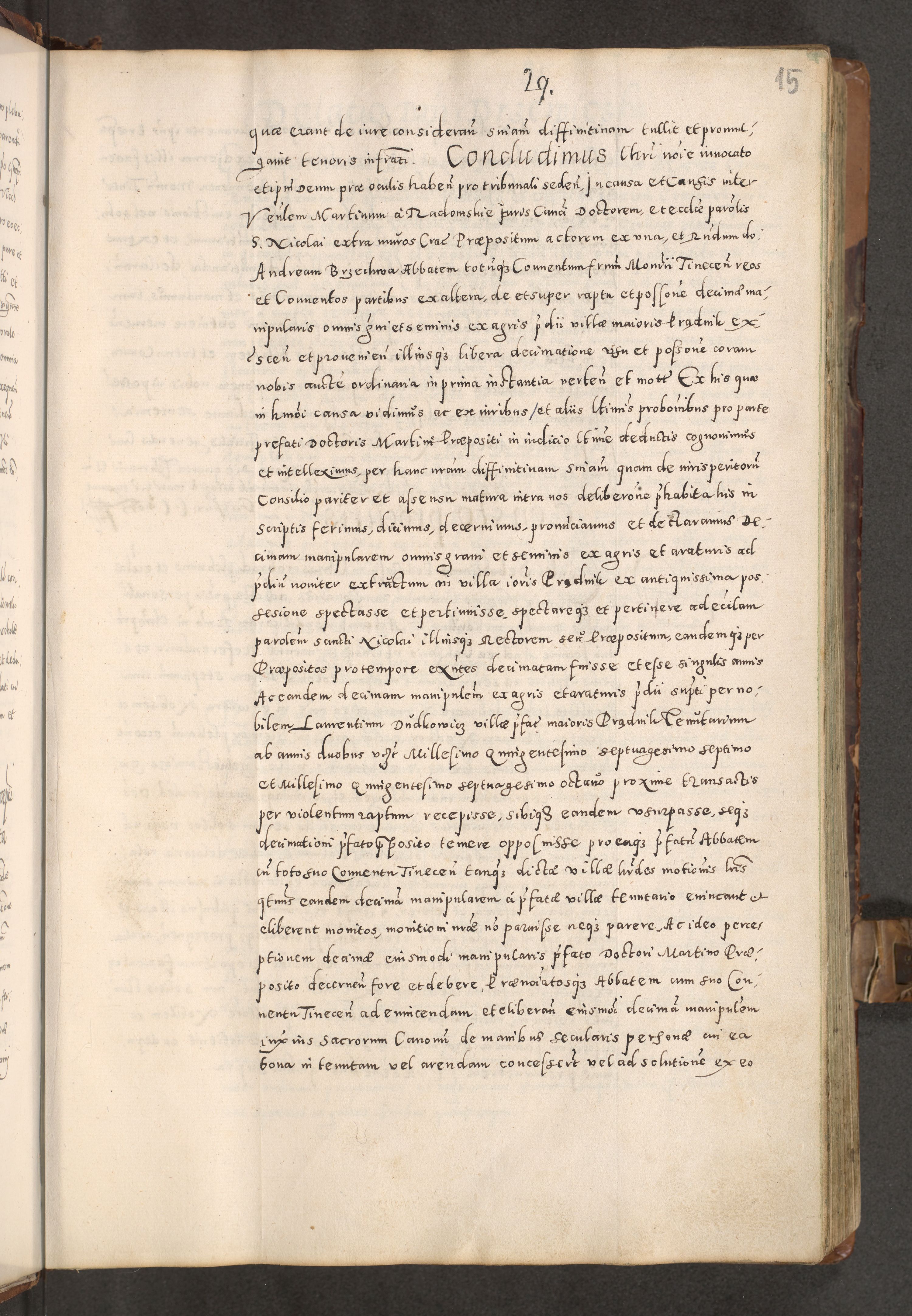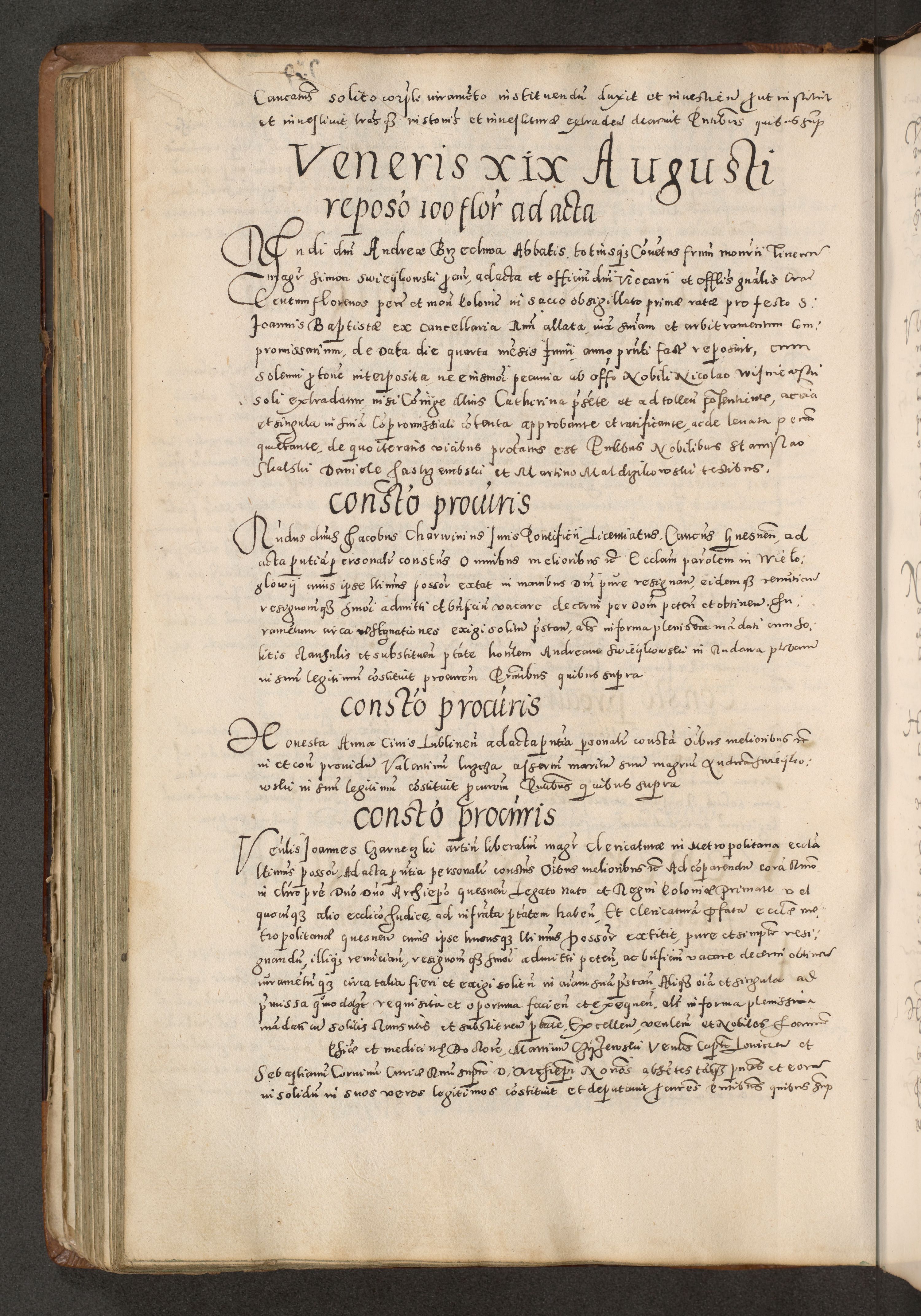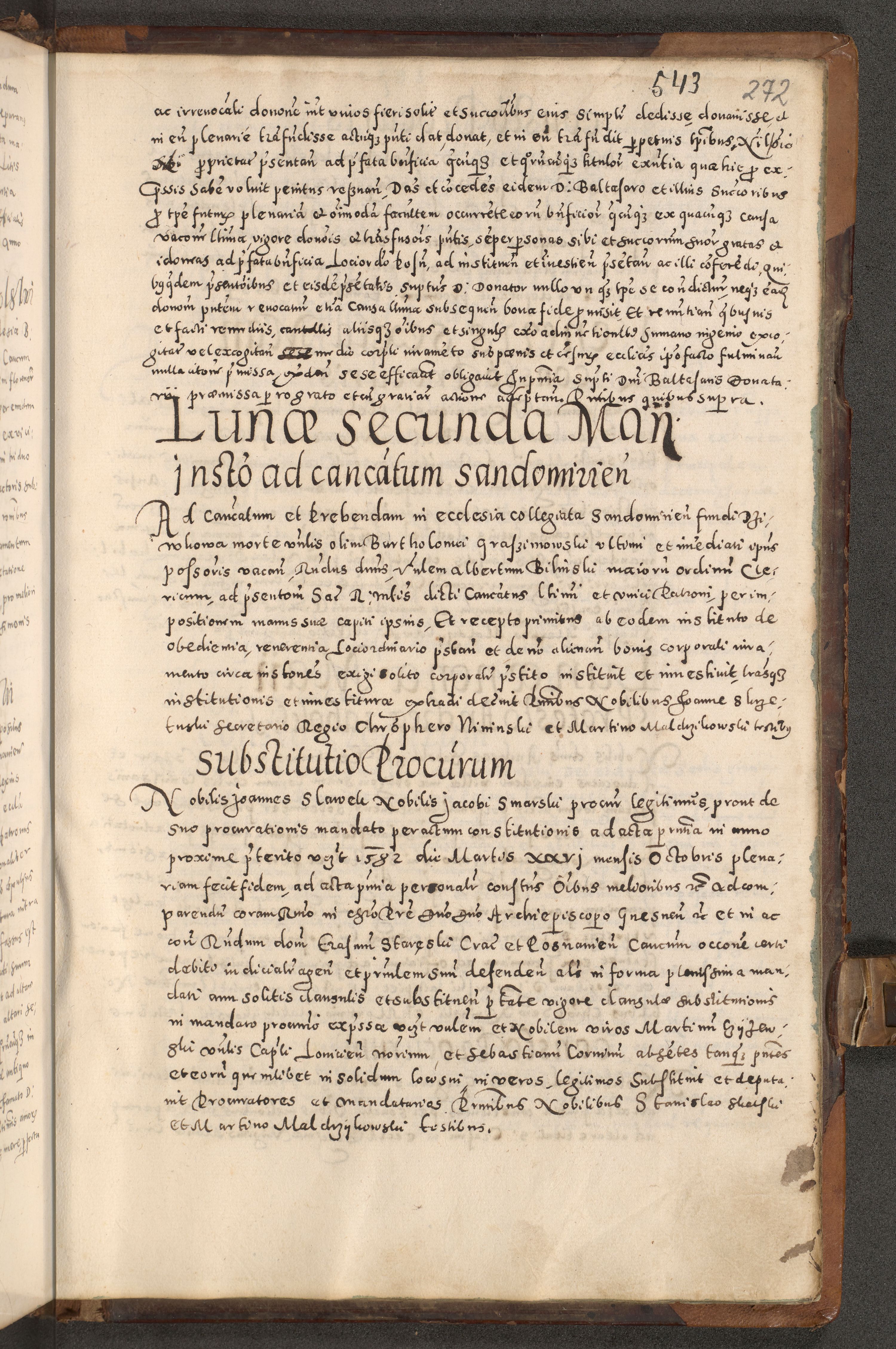Acta actorum causarum tam diffinitivarum quam interloquutoriarum sententiarum decretorum obligationum quietatorum constuorum pro reverendum coram Reverendo Domino Alberto Nininski Custode Sandecensis Canonico et Archipresbitero Viccarioque in Spiritualibus ac Officiali Generali Cracoviensis ad Annum Domini Millesimum Qumgentesimum Septuagentesimum Nonum cuius Judictio septima Pontificat SS. nostri Domini Gregory pp. tredecimi Anno septimo inchoantur faliciter