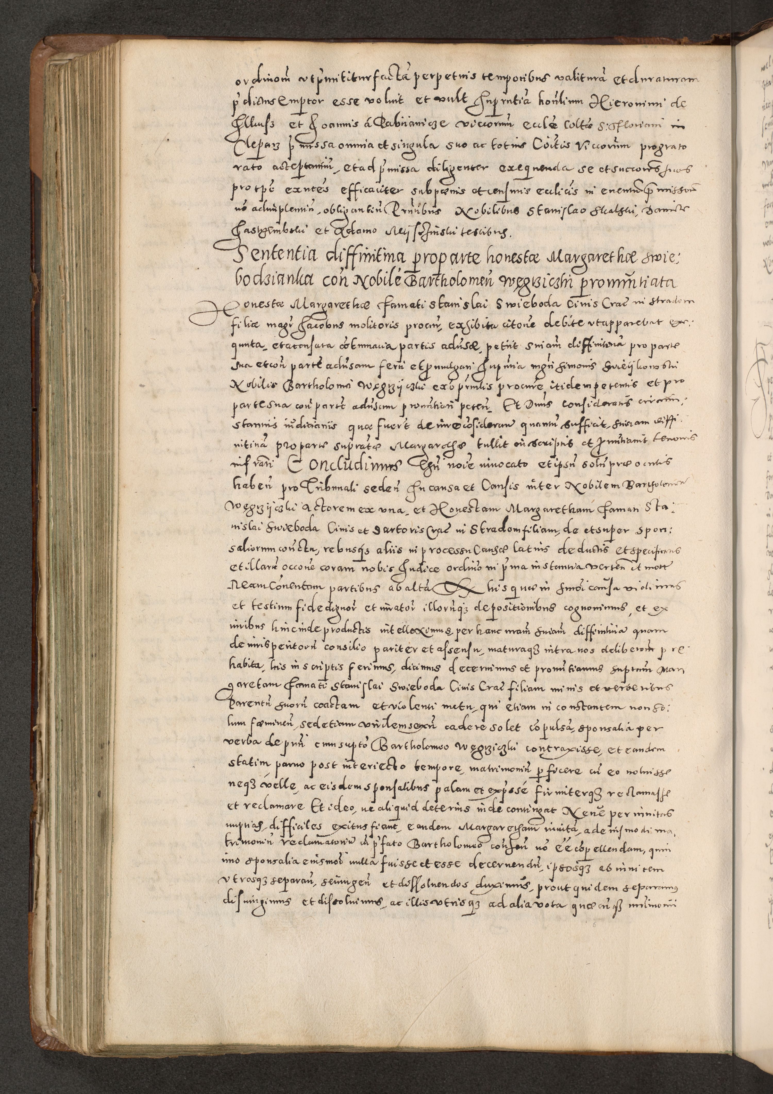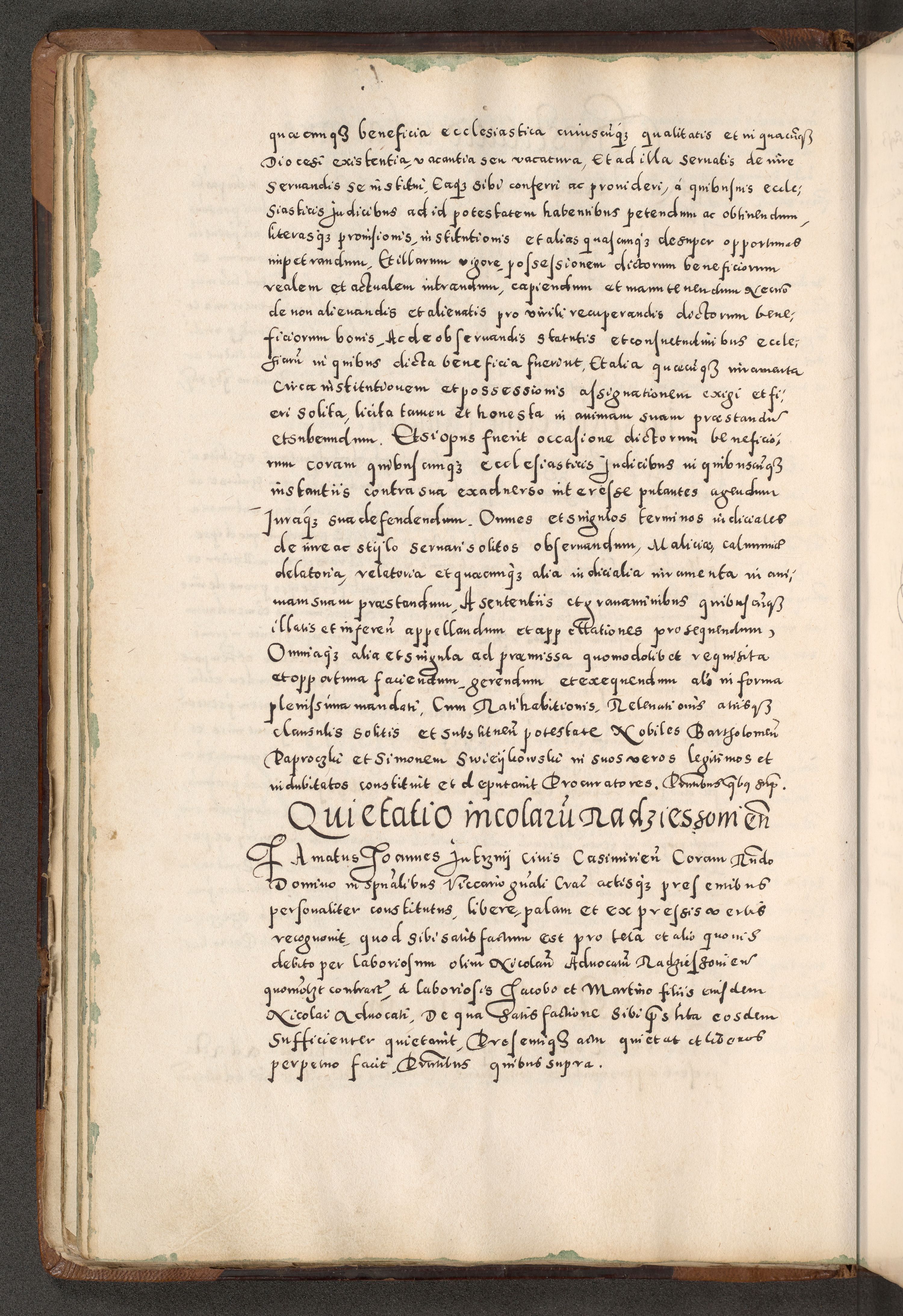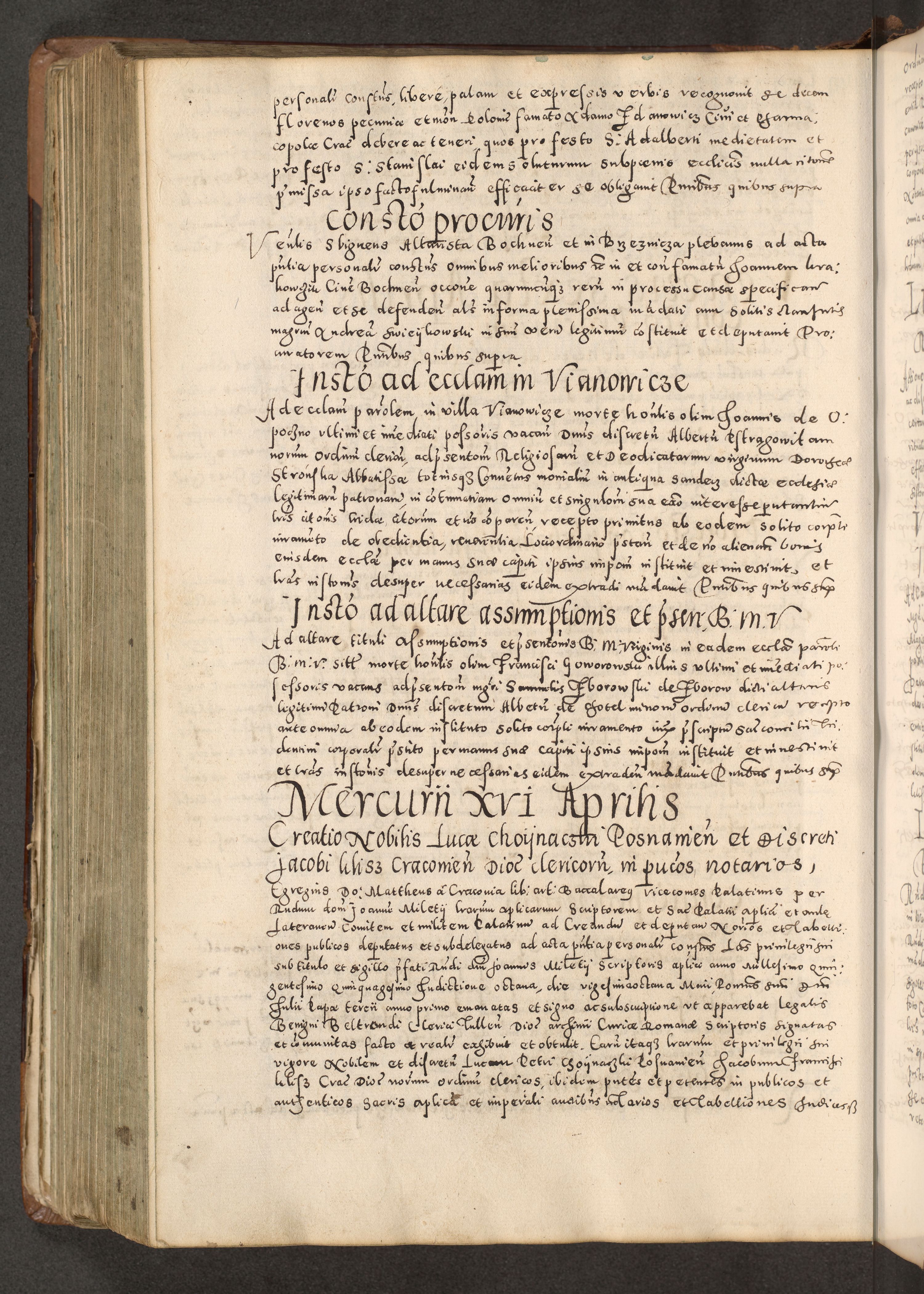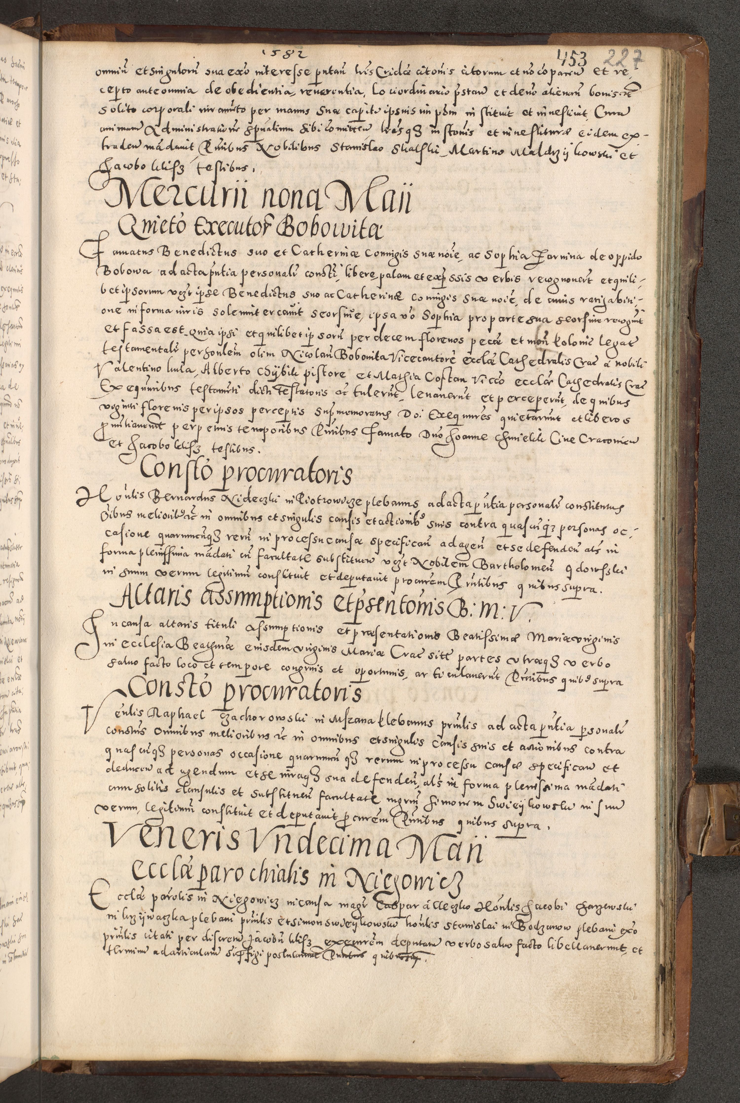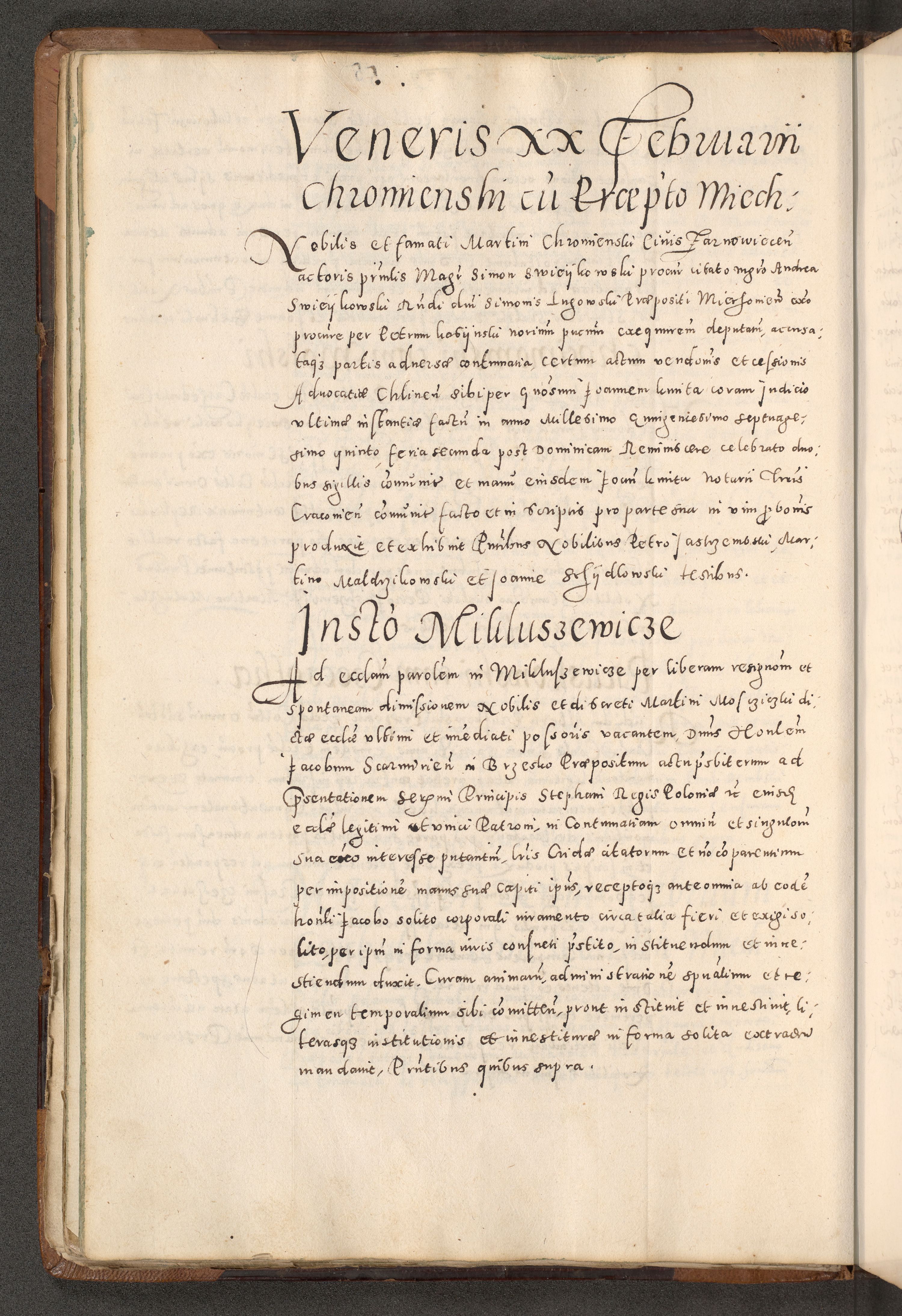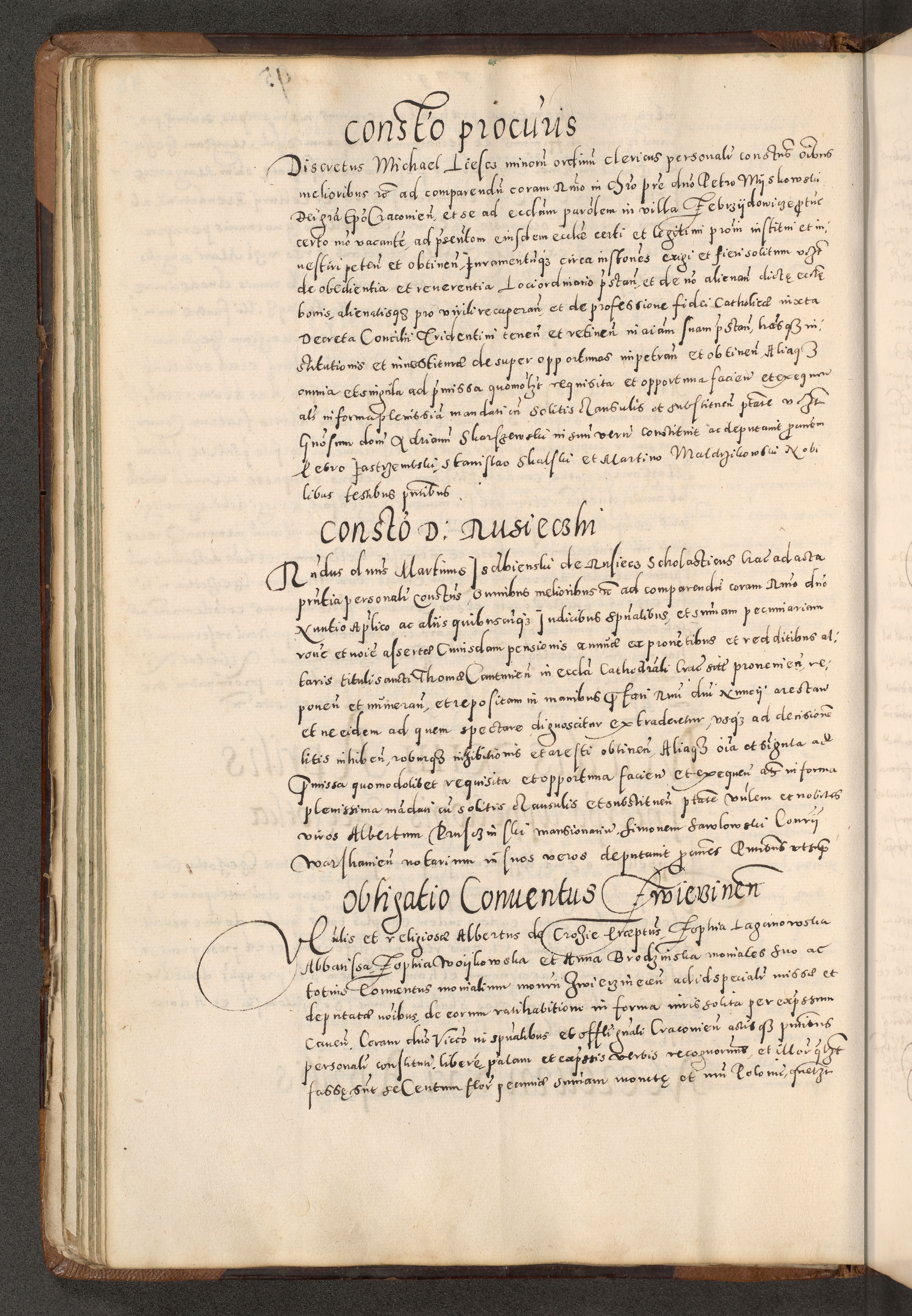 Acta actorum causarum tam diffinitivarum quam interloquutoriarum sententiarum decretorum obligationum quietatorum constuorum pro reverendum coram Reverendo Domino Alberto Nininski Custode Sandecensis Canonico et Archipresbitero Viccarioque in Spiritualibus ac Officiali Generali Cracoviensis ad Annum Domini Millesimum Qumgentesimum Septuagentesimum Nonum cuius Judictio septima Pontificat SS. nostri Domini Gregory pp. tredecimi Anno septimo inchoantur faliciter