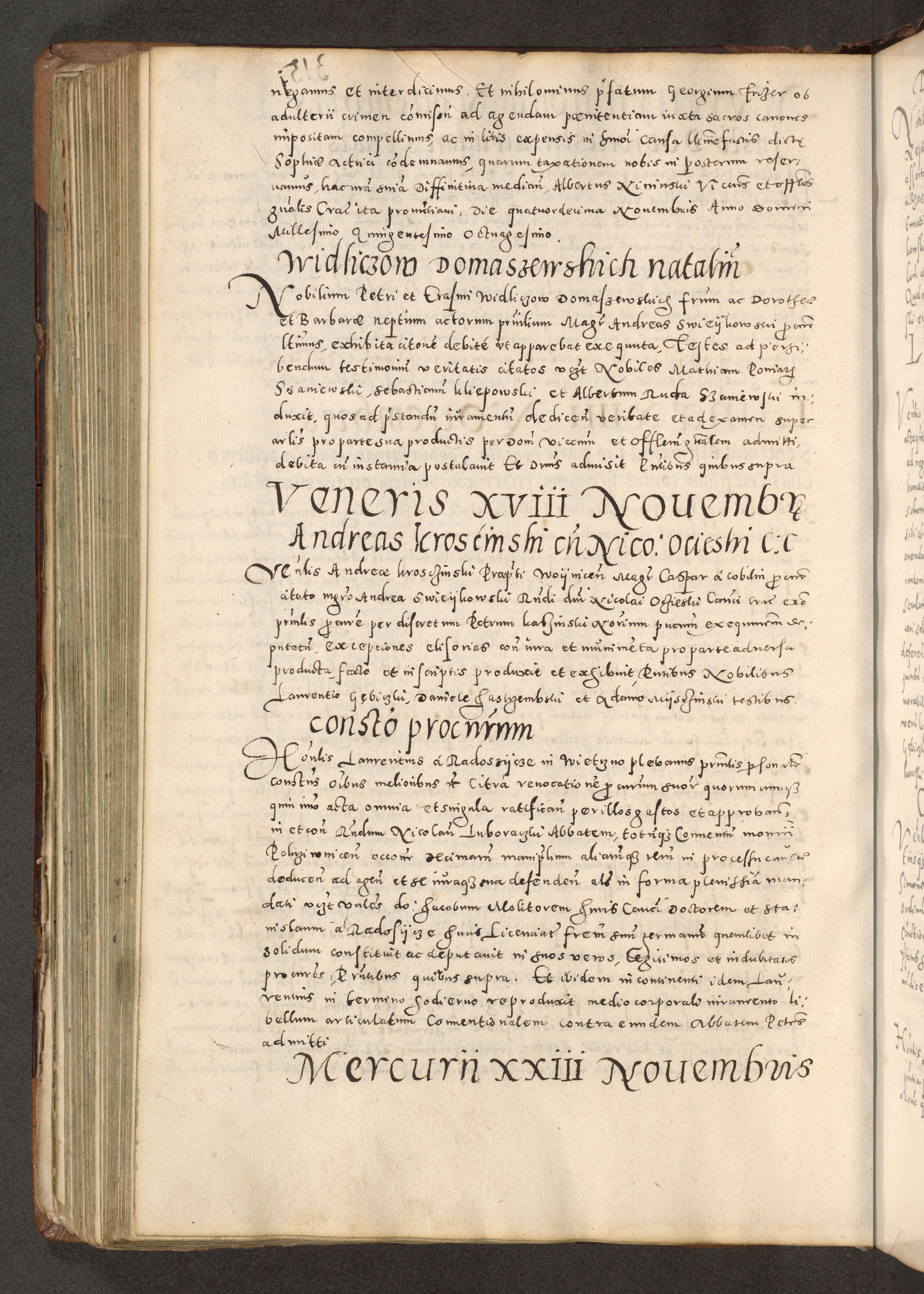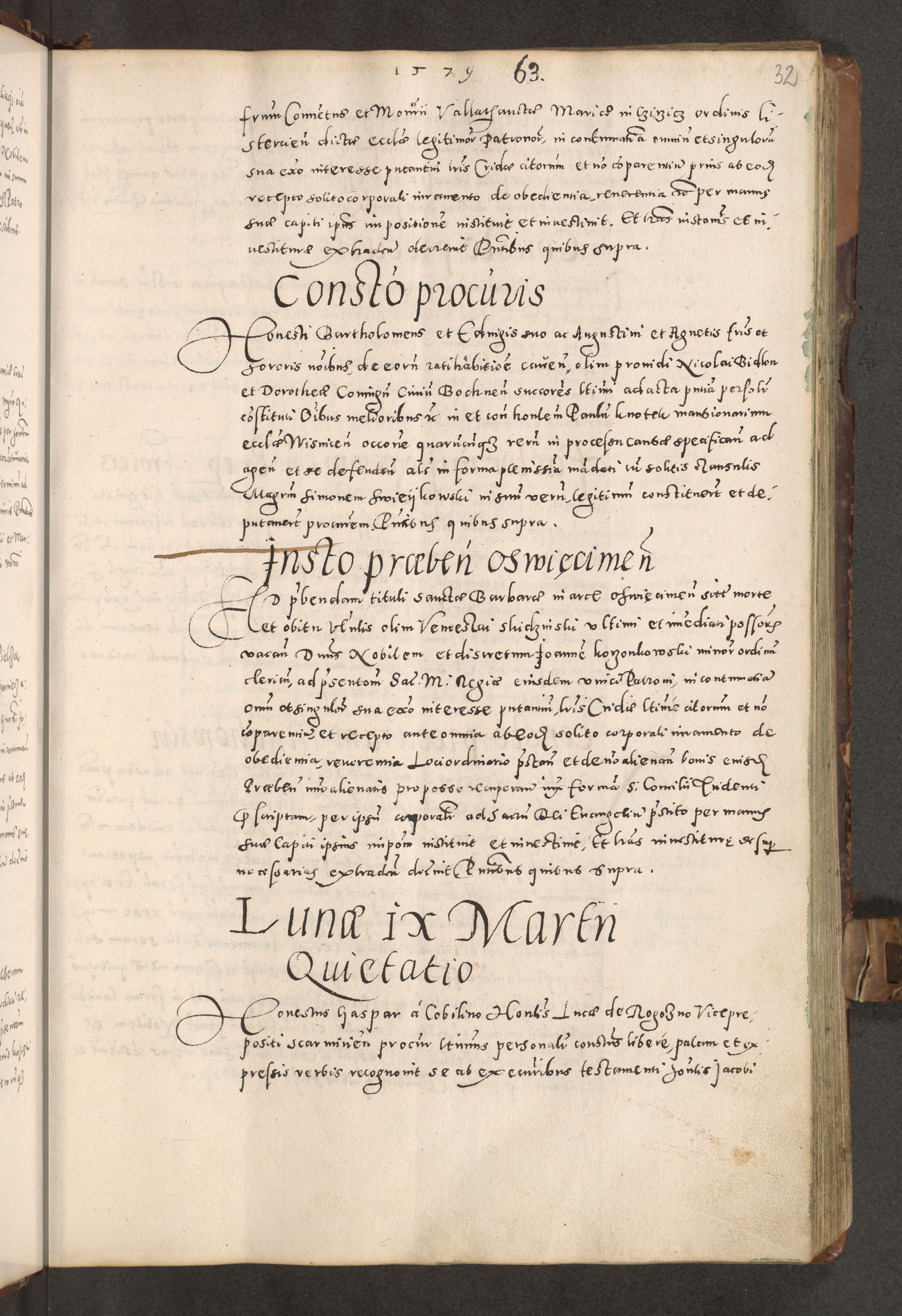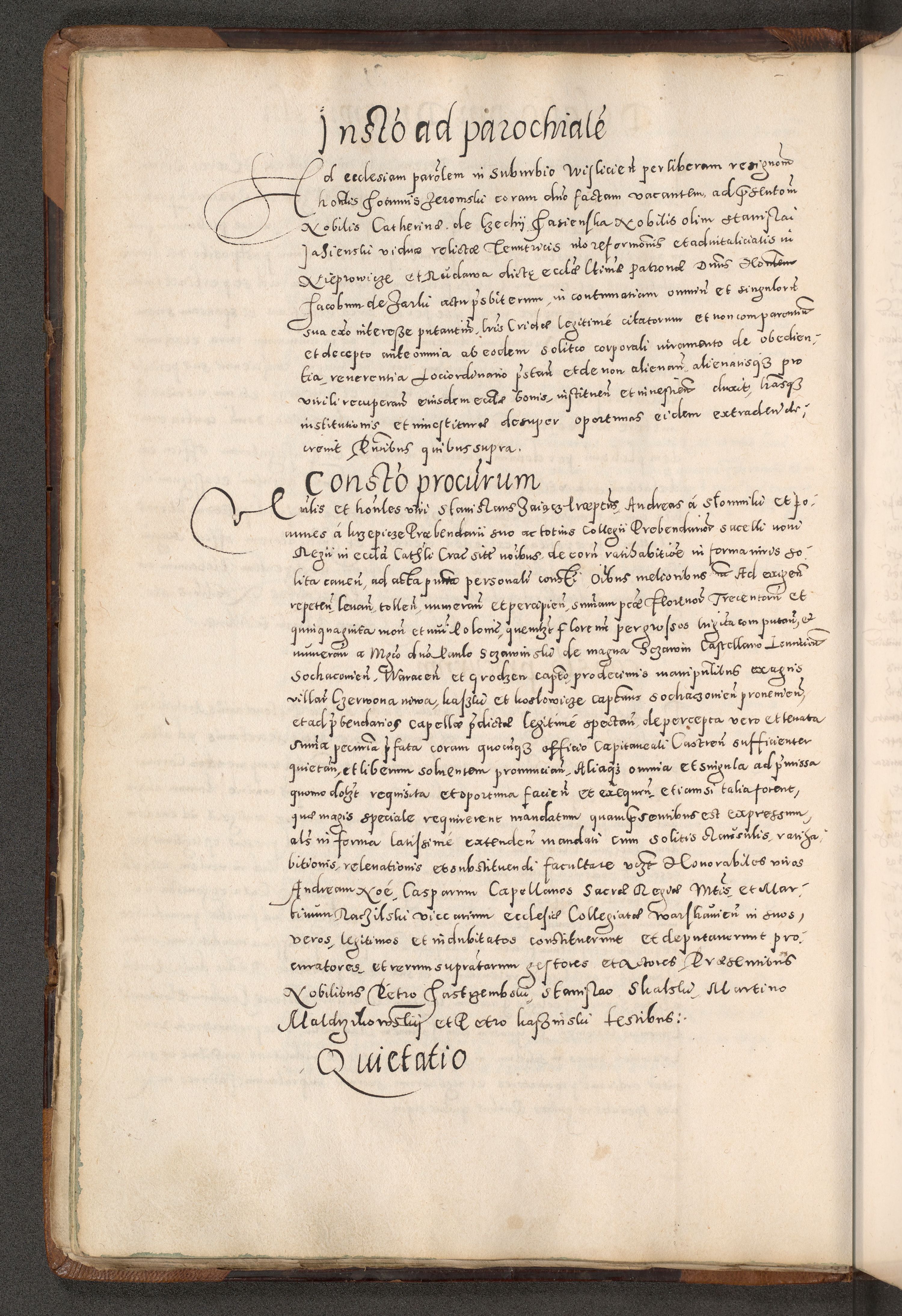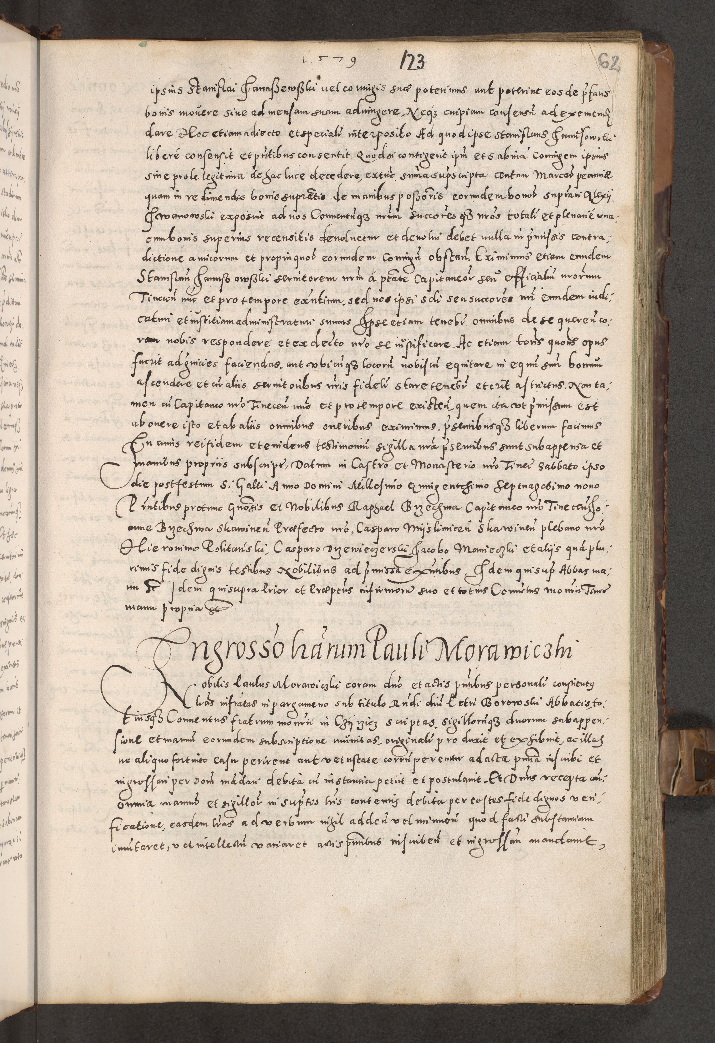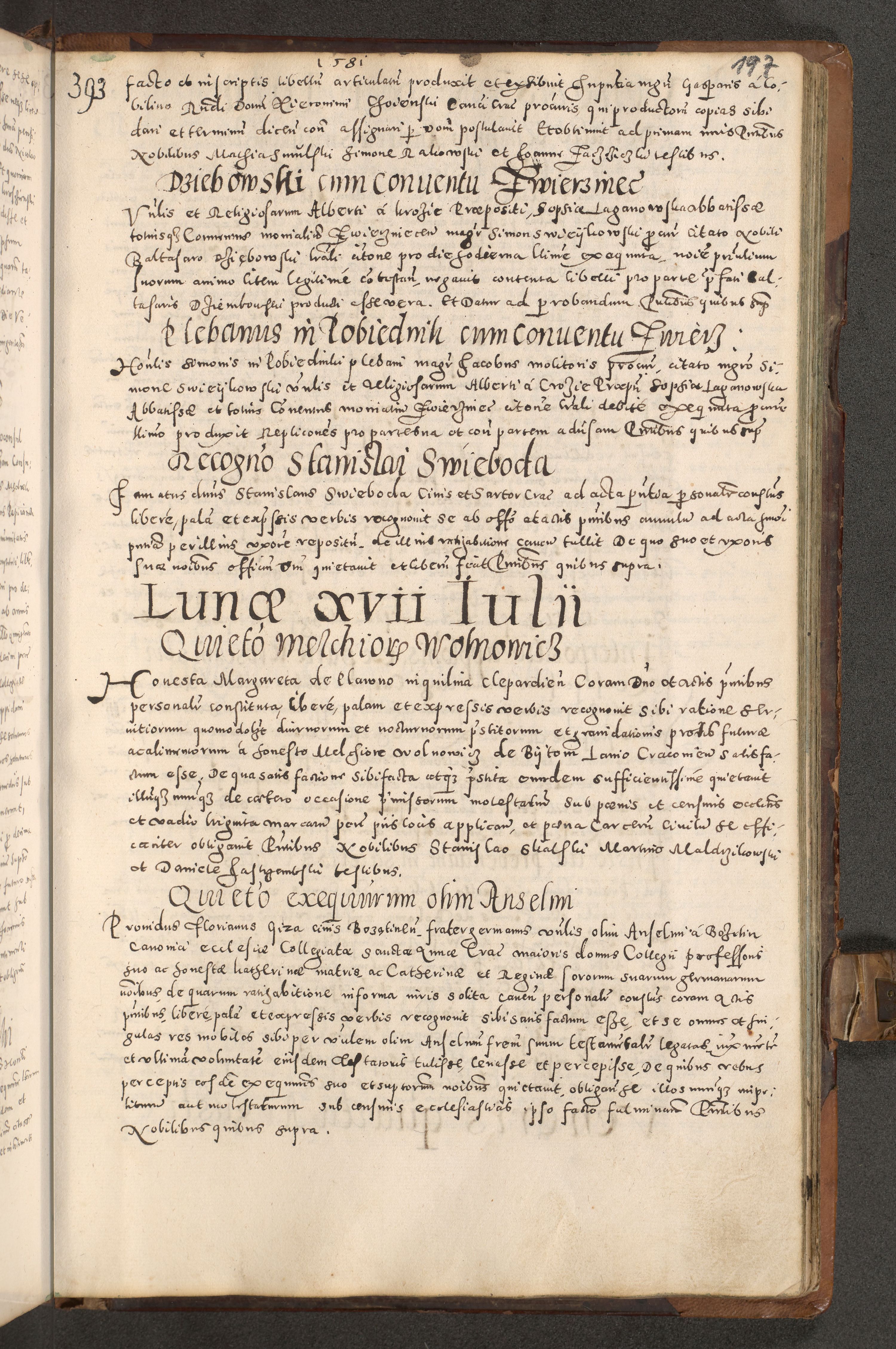 Acta actorum causarum tam diffinitivarum quam interloquutoriarum sententiarum decretorum obligationum quietatorum constuorum pro reverendum coram Reverendo Domino Alberto Nininski Custode Sandecensis Canonico et Archipresbitero Viccarioque in Spiritualibus ac Officiali Generali Cracoviensis ad Annum Domini Millesimum Qumgentesimum Septuagentesimum Nonum cuius Judictio septima Pontificat SS. nostri Domini Gregory pp. tredecimi Anno septimo inchoantur faliciter