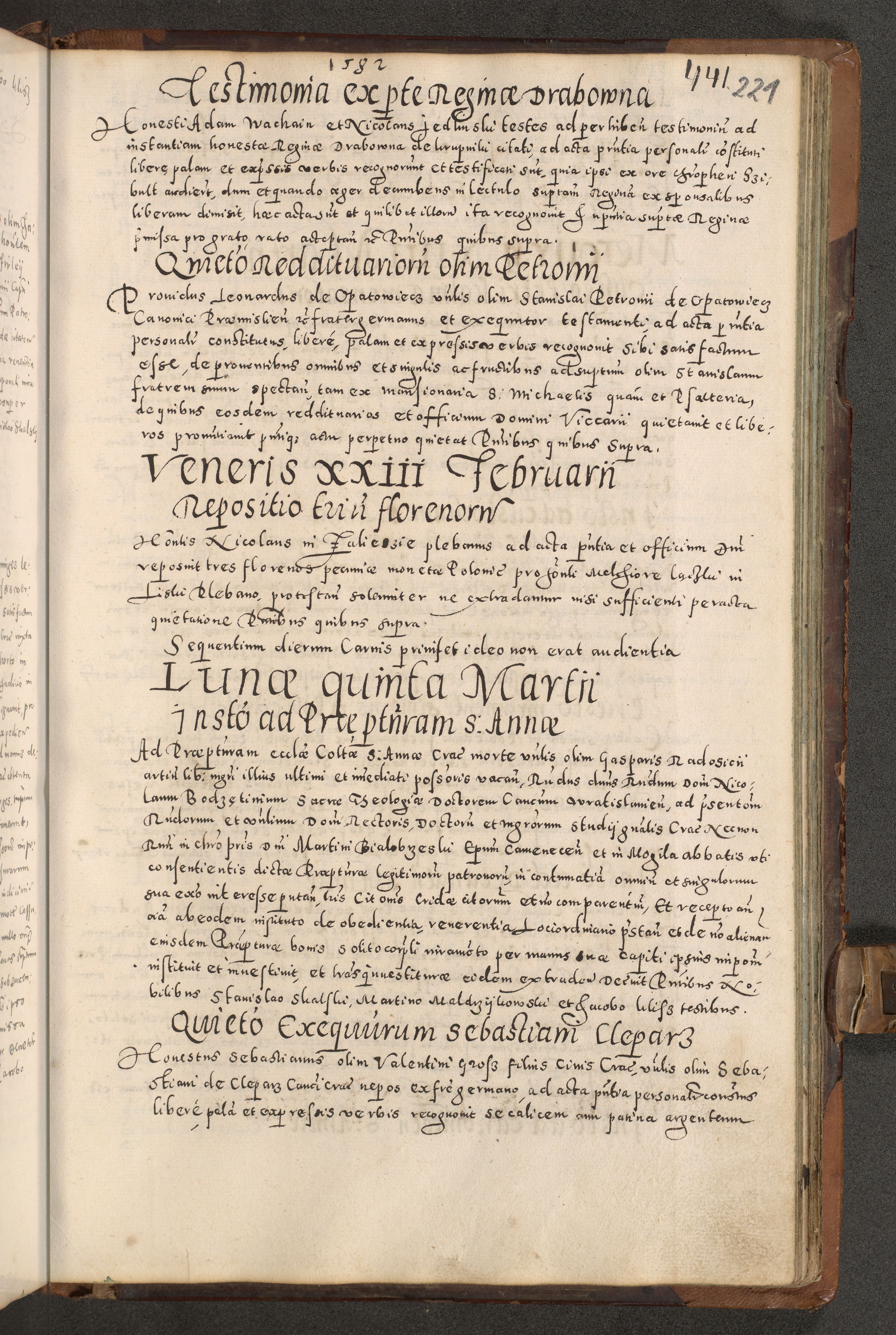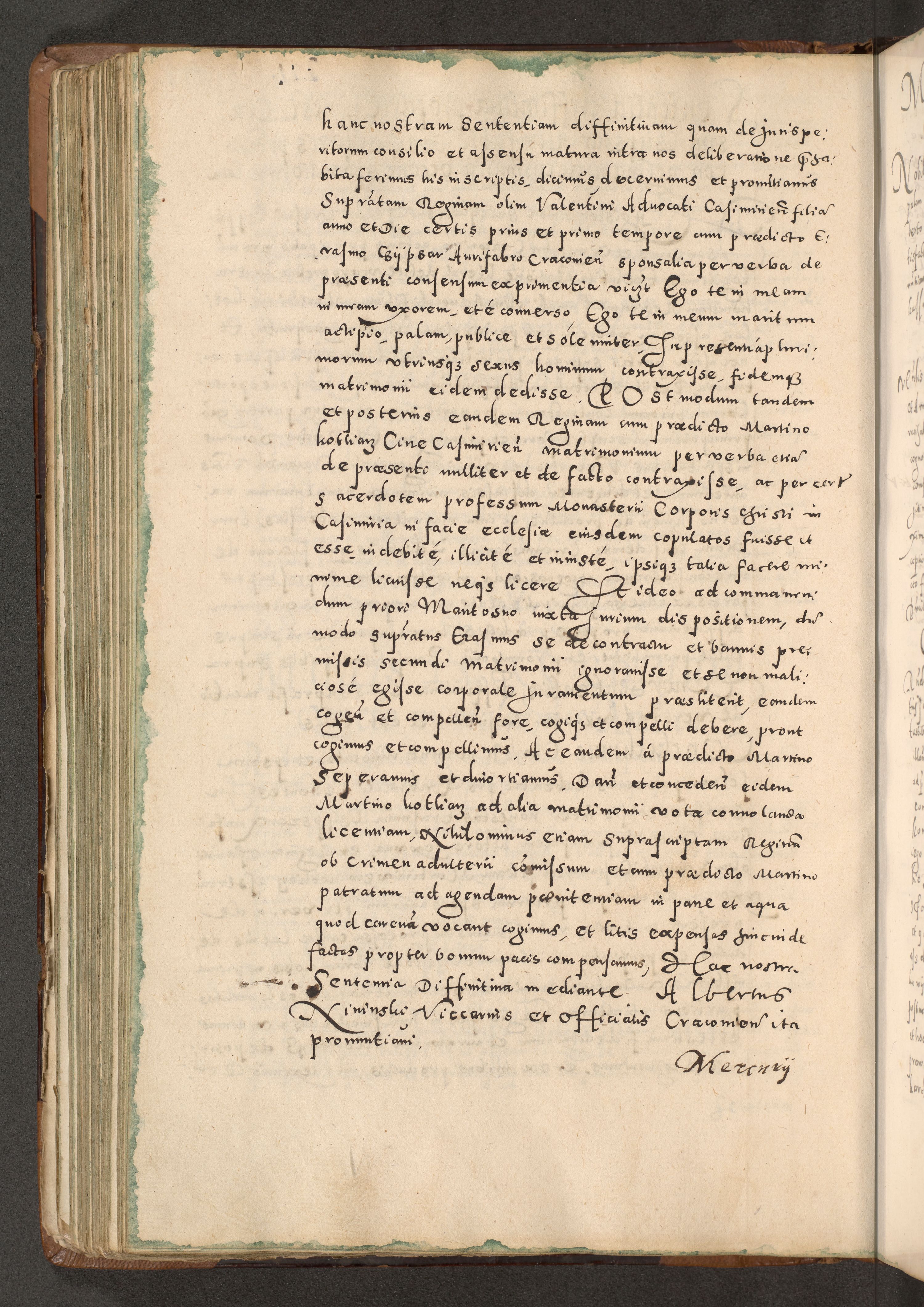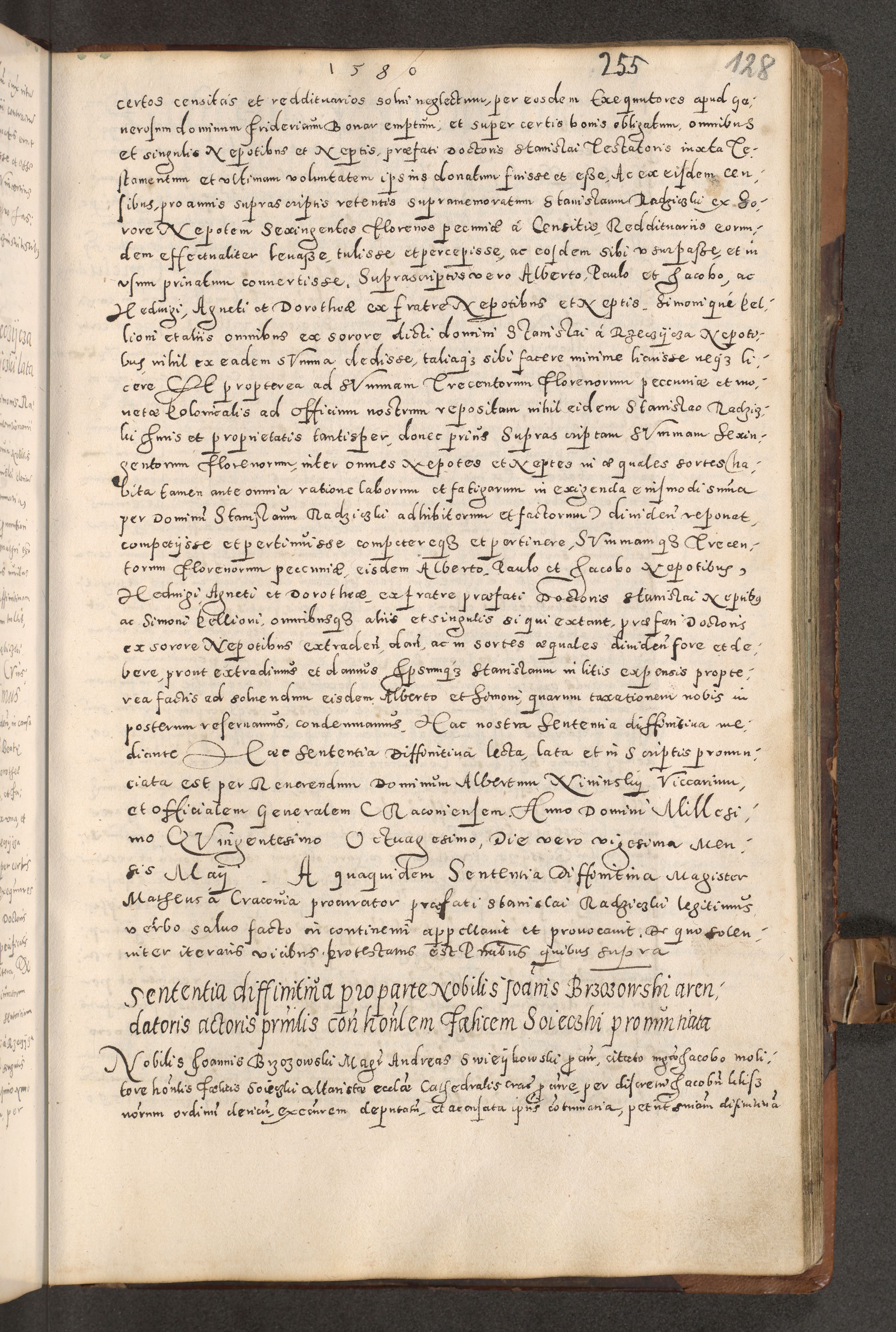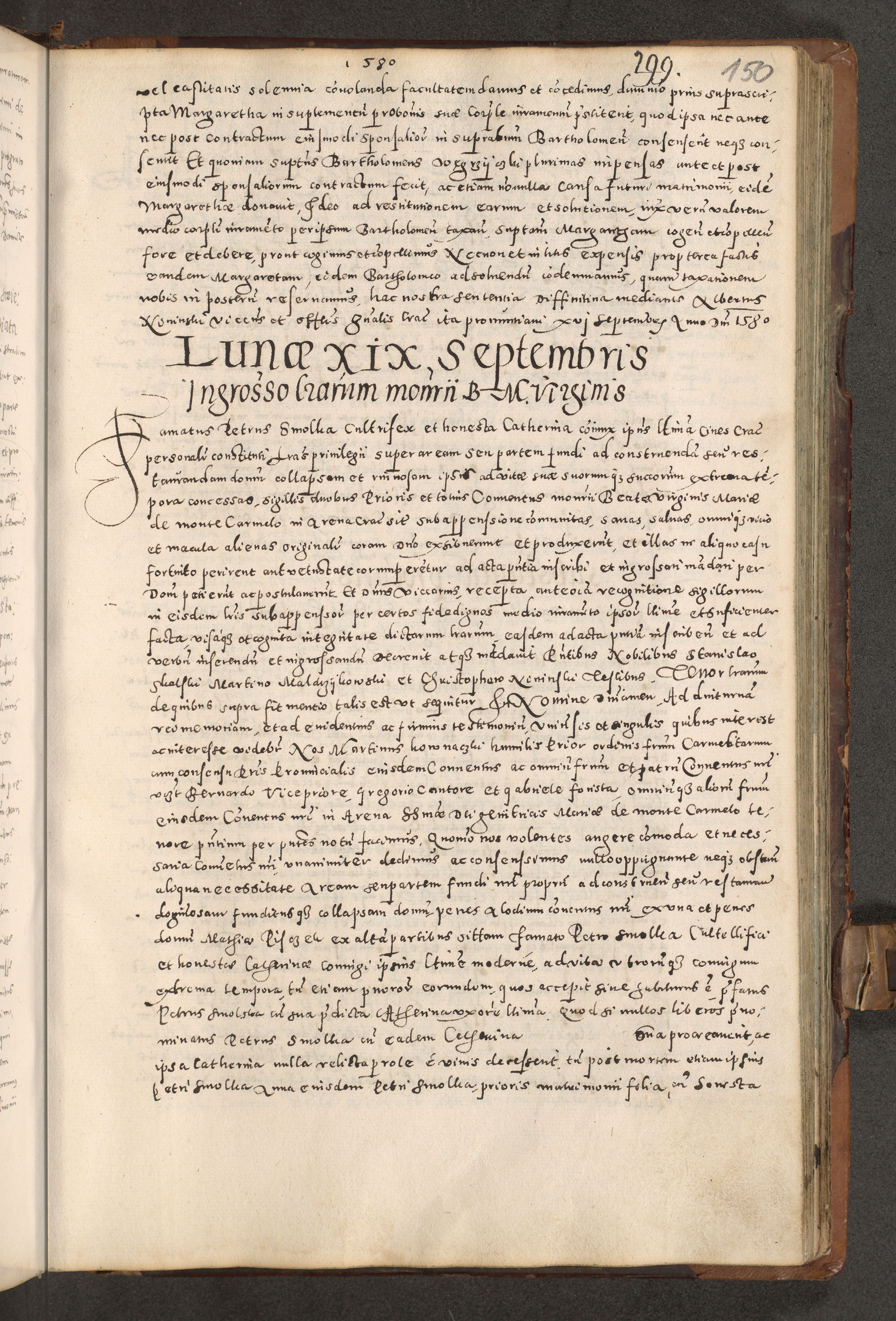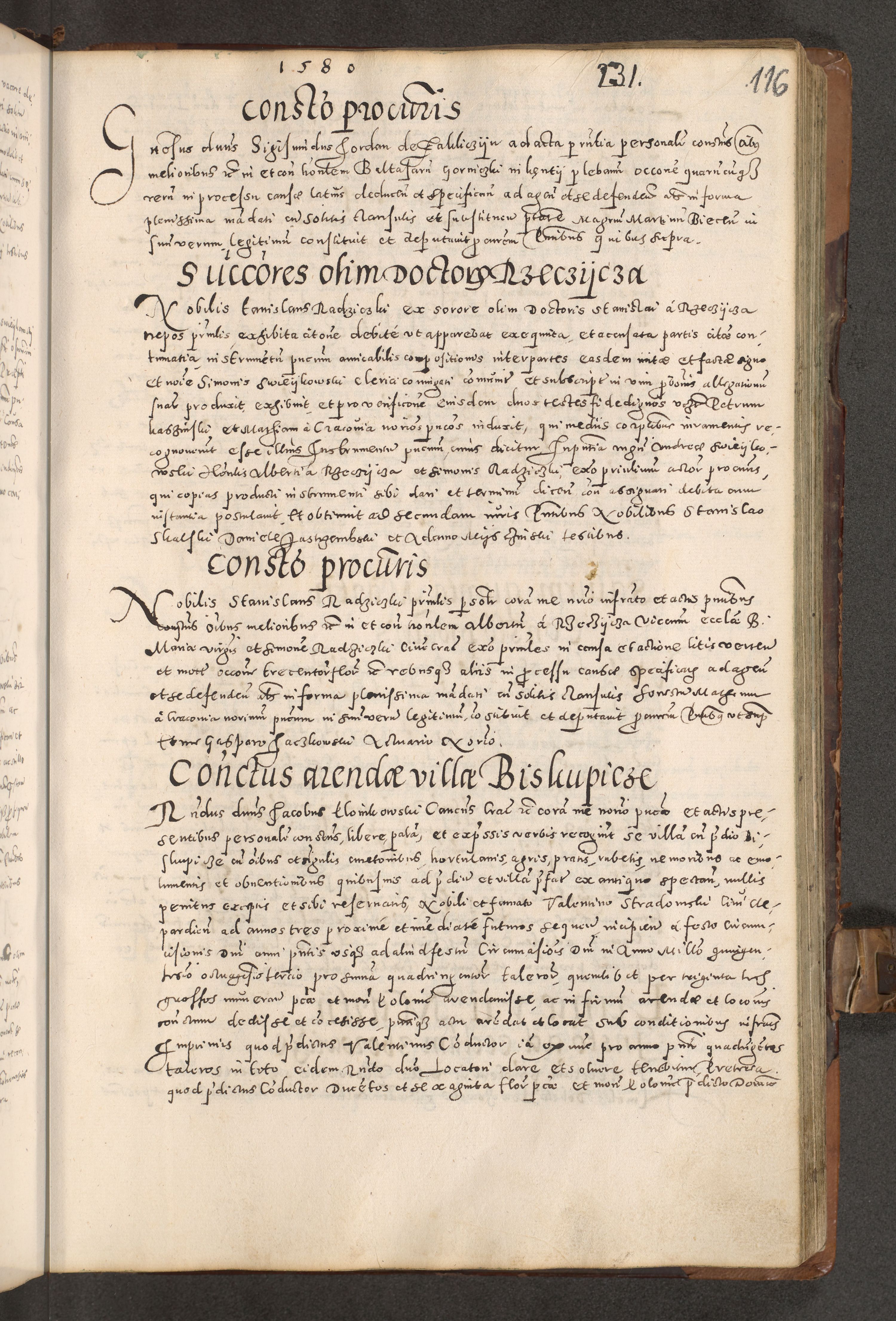 Acta actorum causarum tam diffinitivarum quam interloquutoriarum sententiarum decretorum obligationum quietatorum constuorum pro reverendum coram Reverendo Domino Alberto Nininski Custode Sandecensis Canonico et Archipresbitero Viccarioque in Spiritualibus ac Officiali Generali Cracoviensis ad Annum Domini Millesimum Qumgentesimum Septuagentesimum Nonum cuius Judictio septima Pontificat SS. nostri Domini Gregory pp. tredecimi Anno septimo inchoantur faliciter