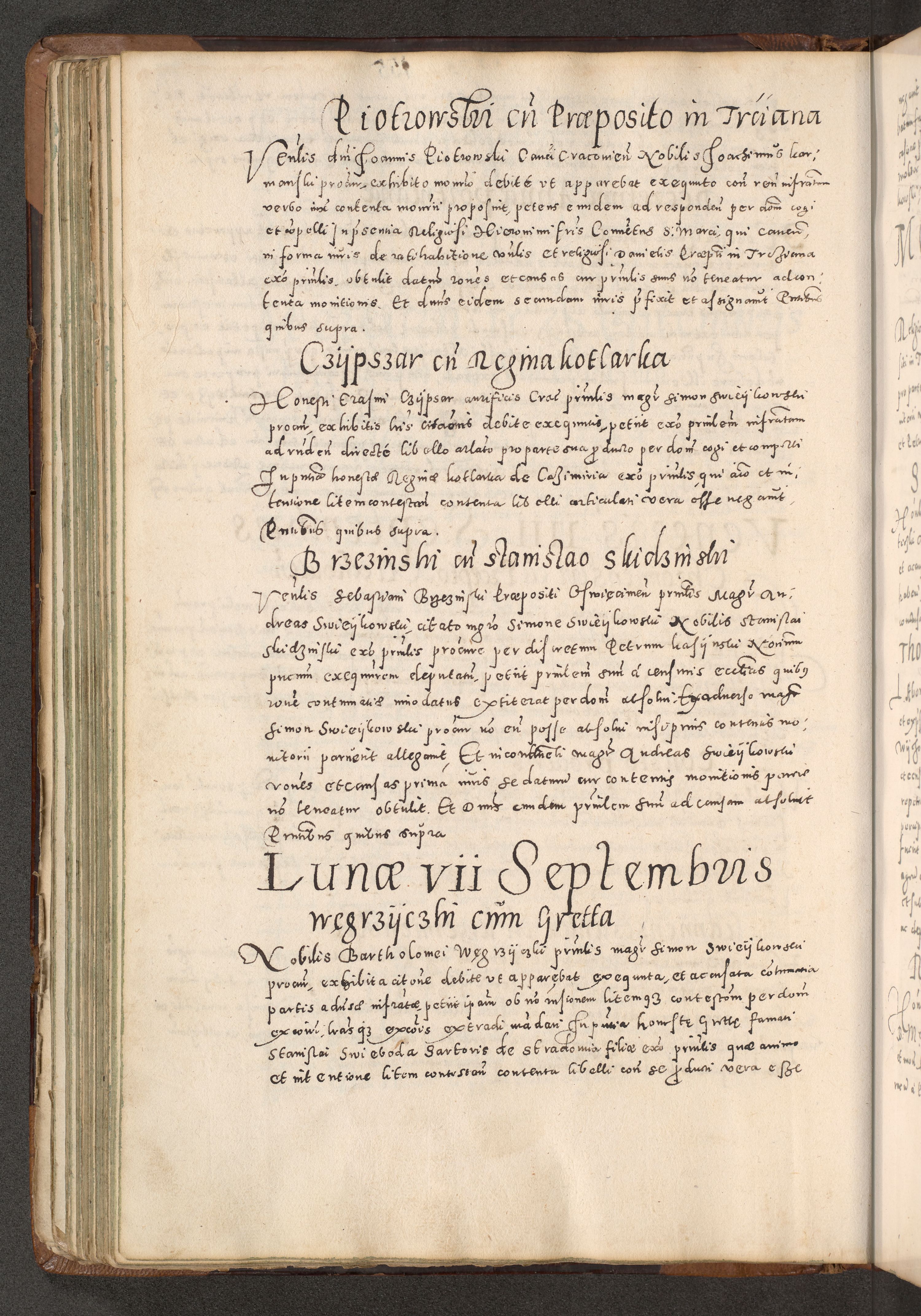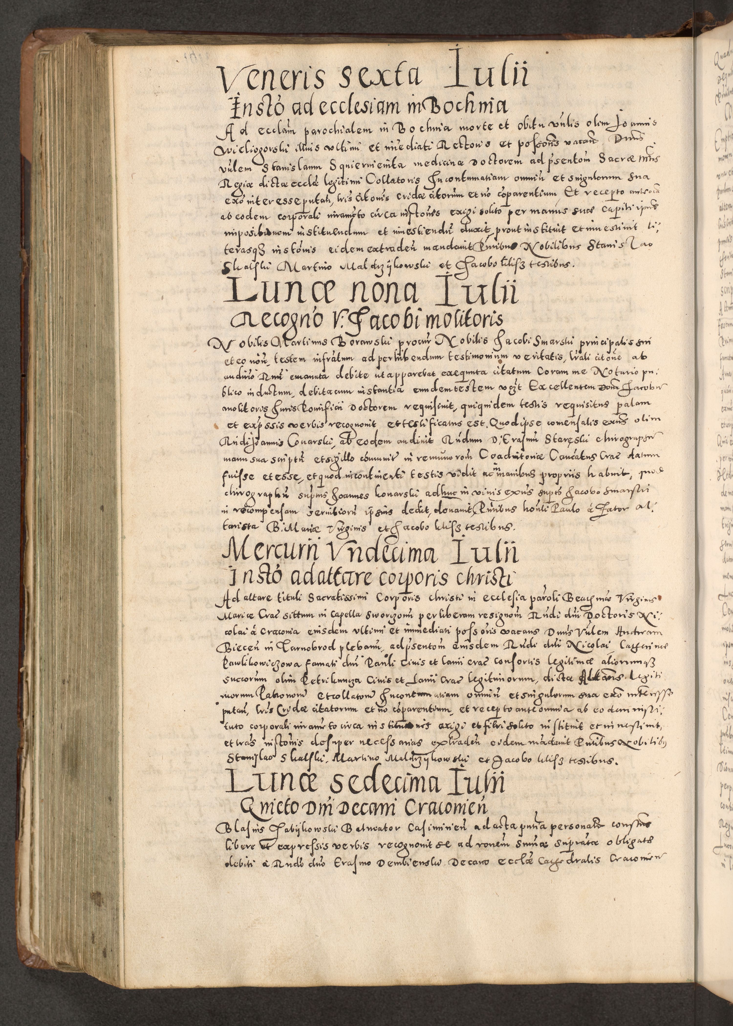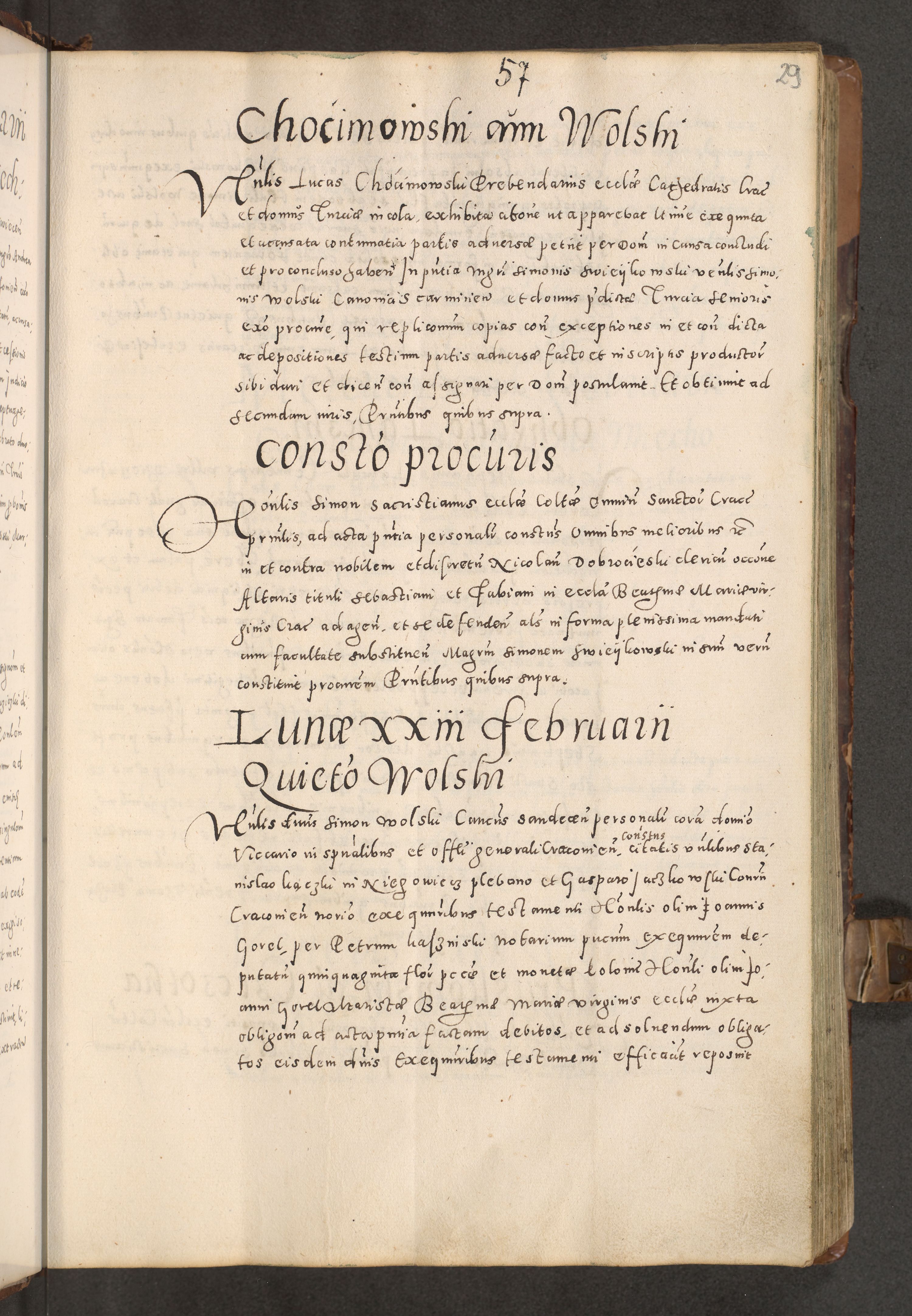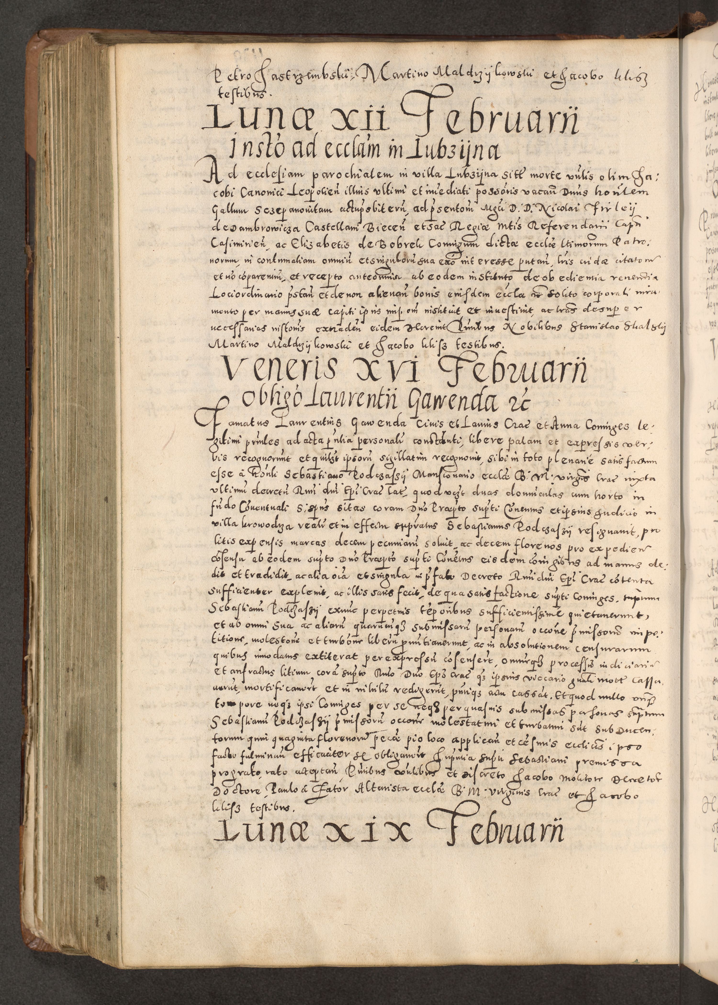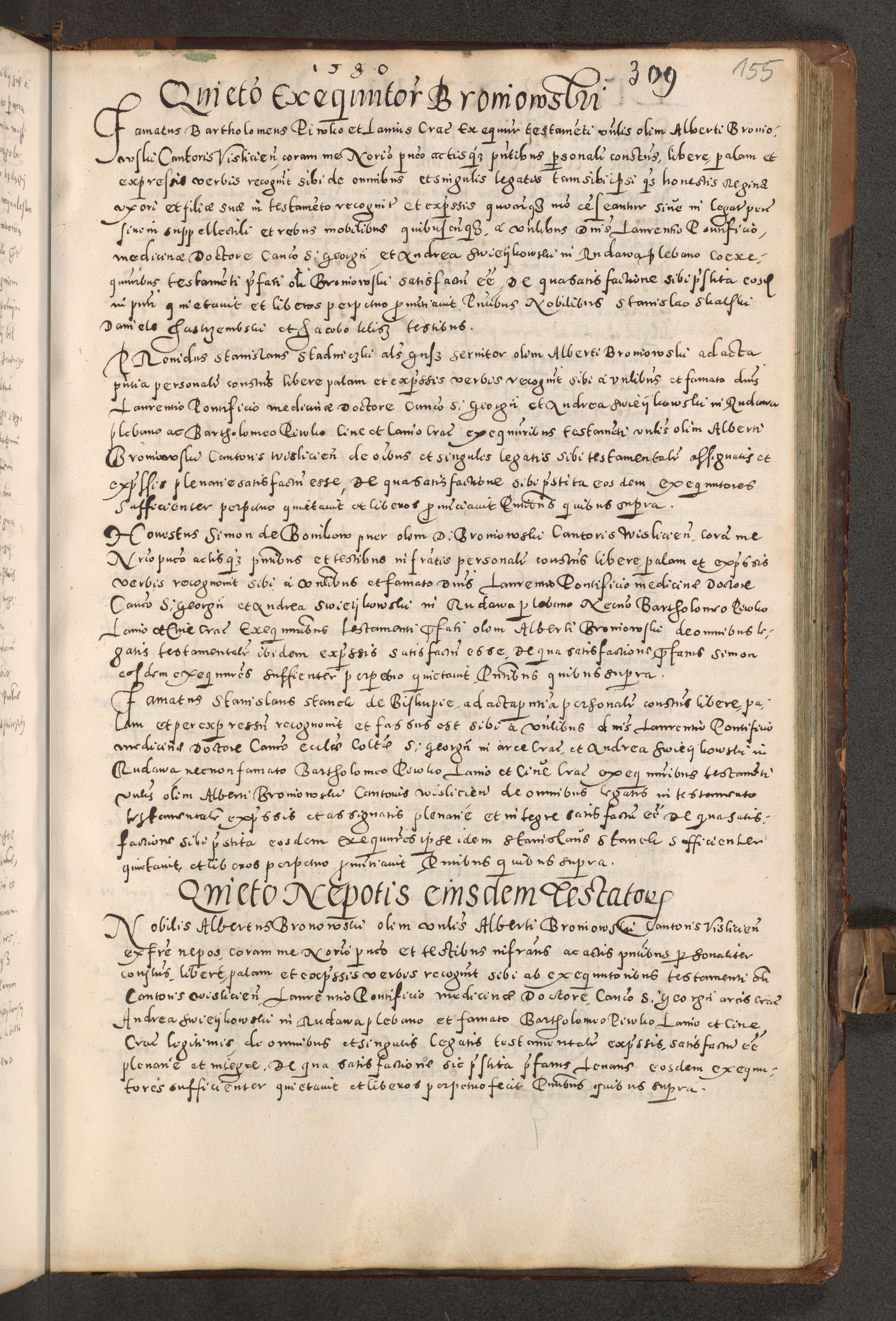 Acta actorum causarum tam diffinitivarum quam interloquutoriarum sententiarum decretorum obligationum quietatorum constuorum pro reverendum coram Reverendo Domino Alberto Nininski Custode Sandecensis Canonico et Archipresbitero Viccarioque in Spiritualibus ac Officiali Generali Cracoviensis ad Annum Domini Millesimum Qumgentesimum Septuagentesimum Nonum cuius Judictio septima Pontificat SS. nostri Domini Gregory pp. tredecimi Anno septimo inchoantur faliciter