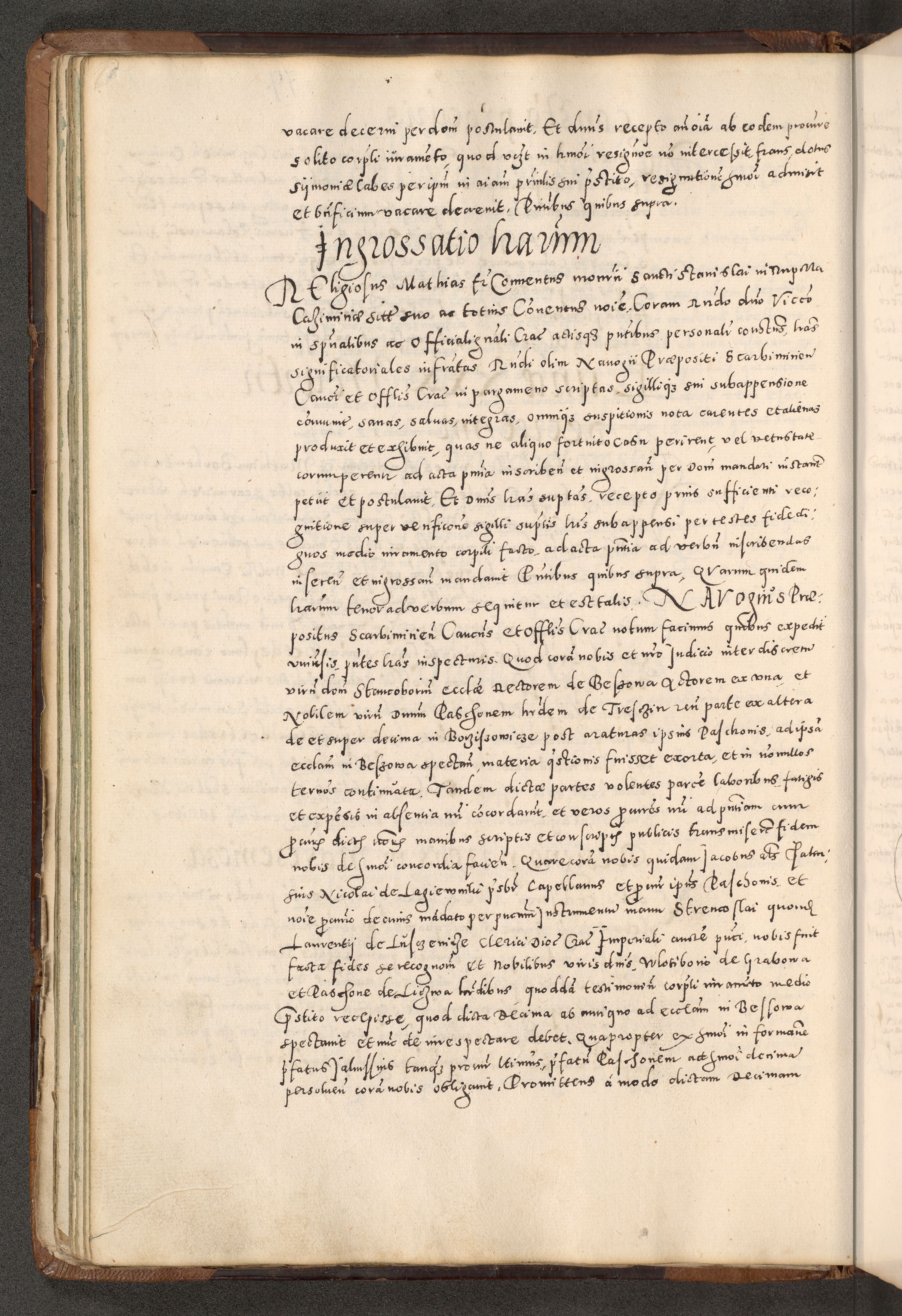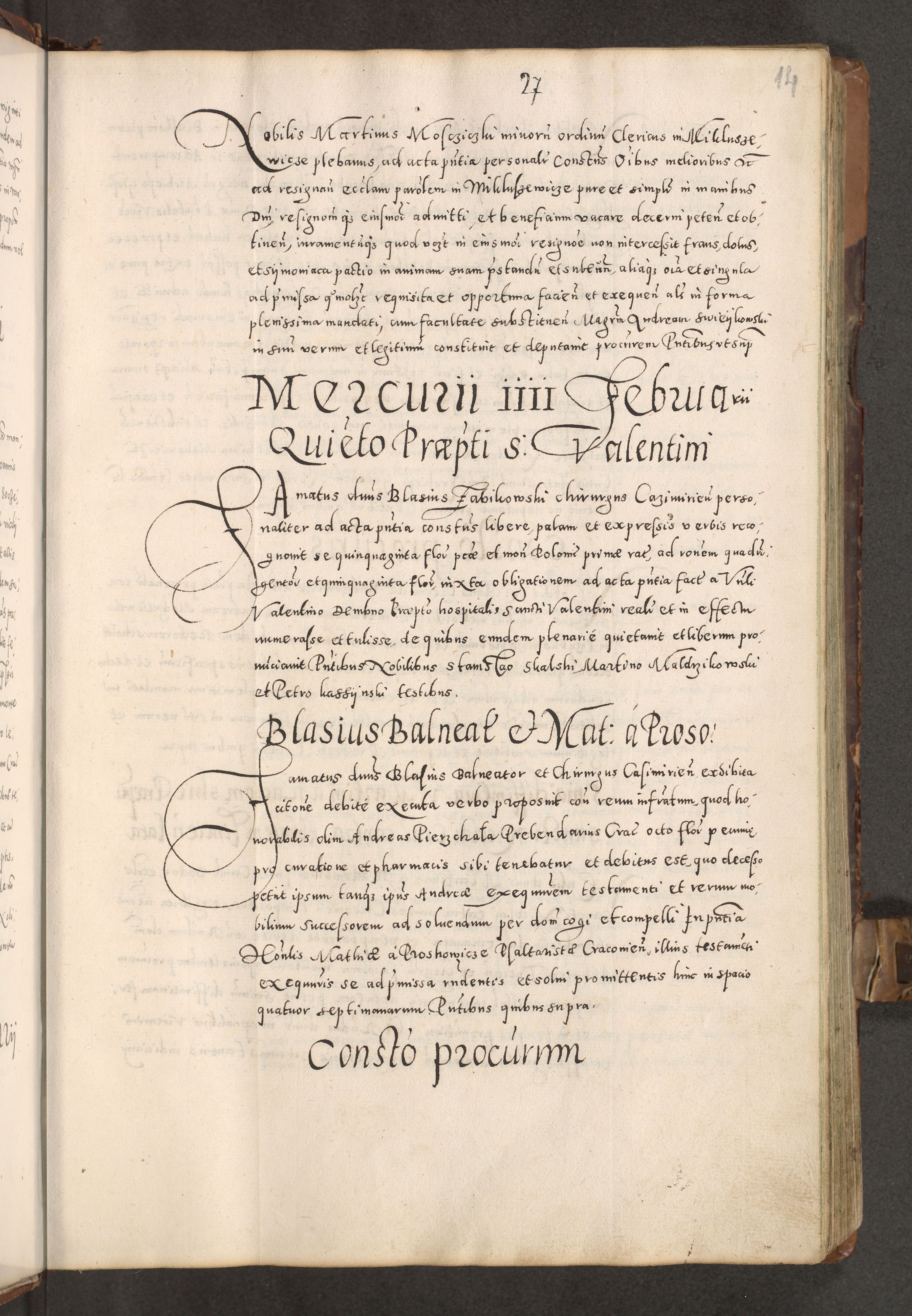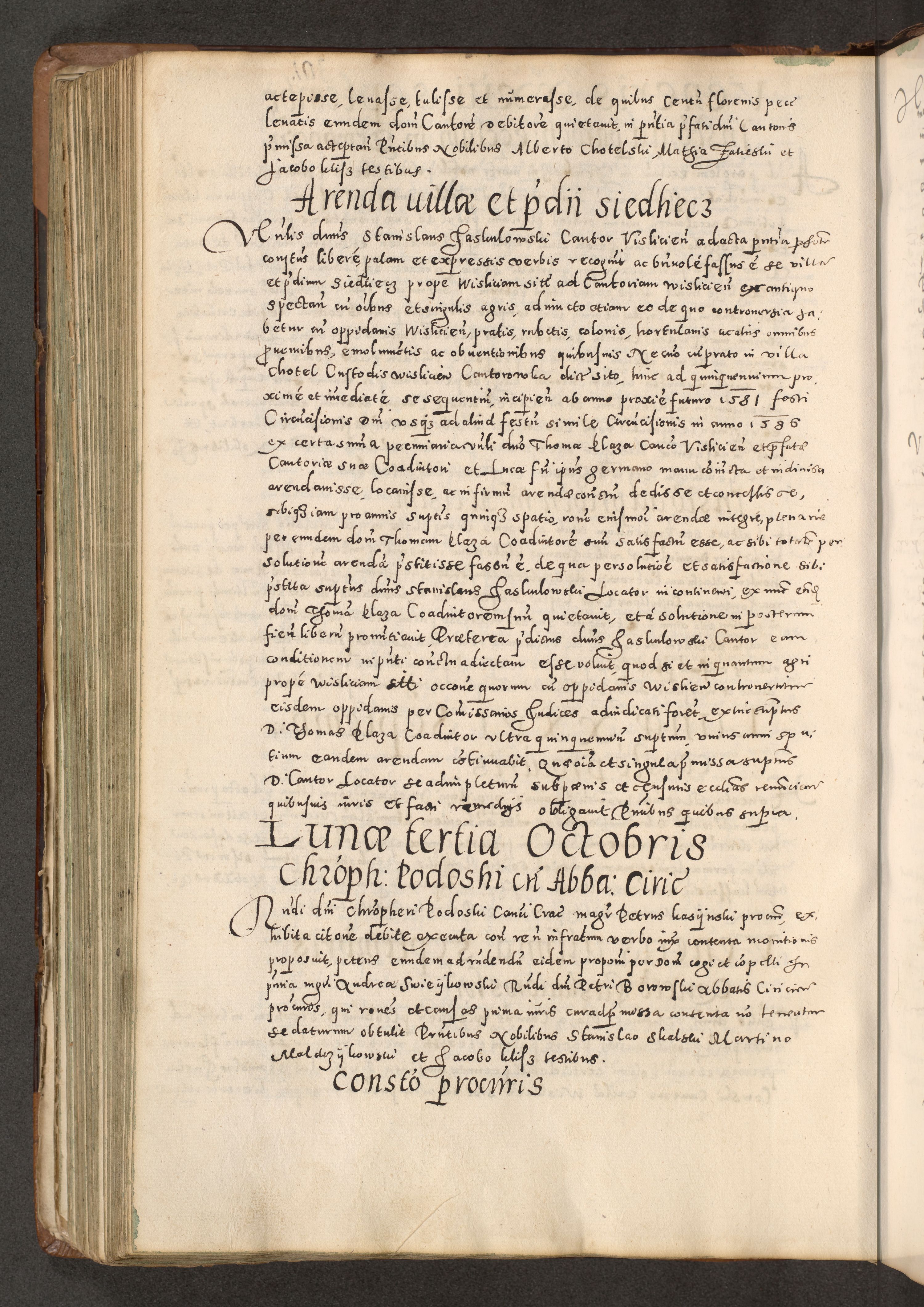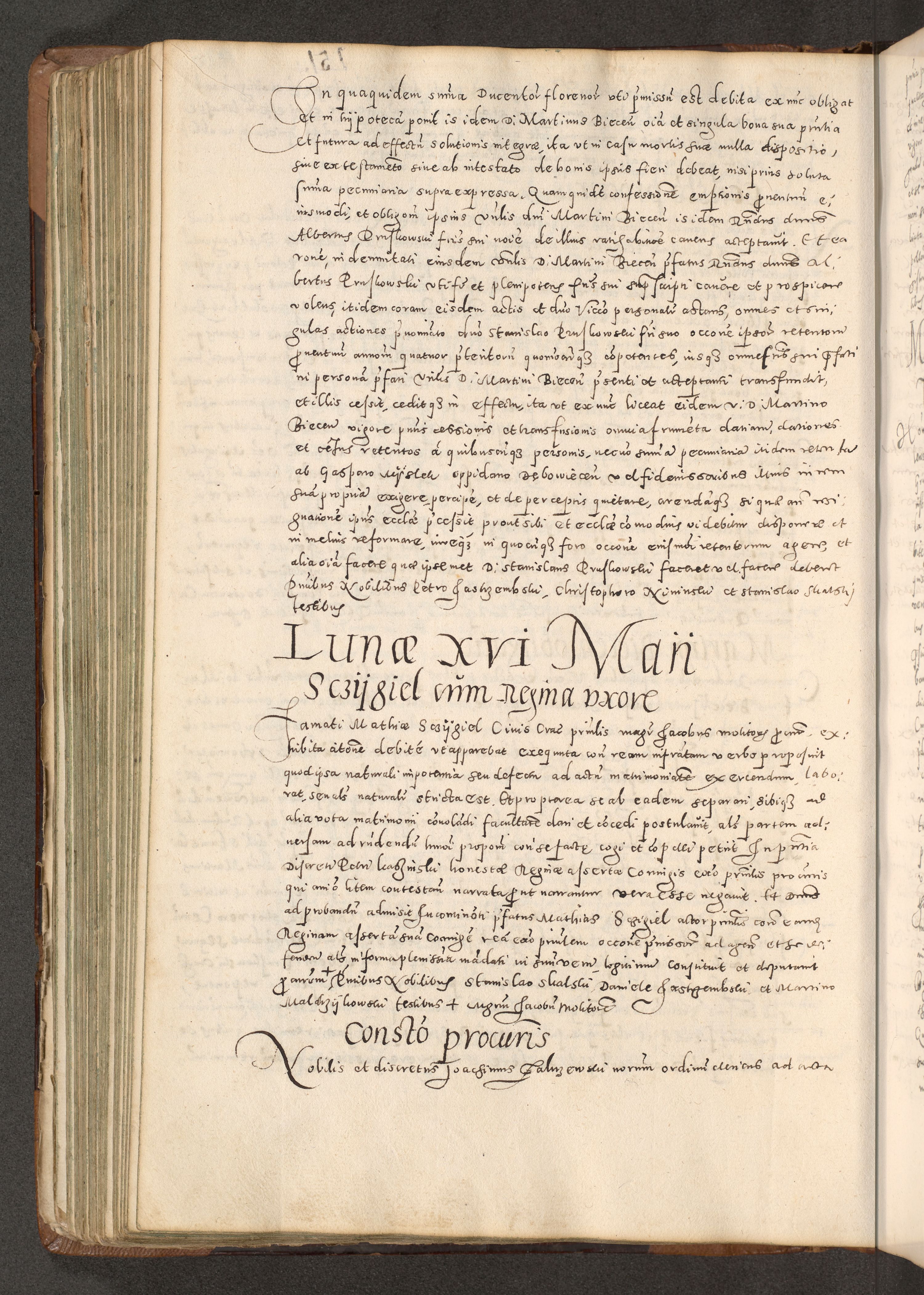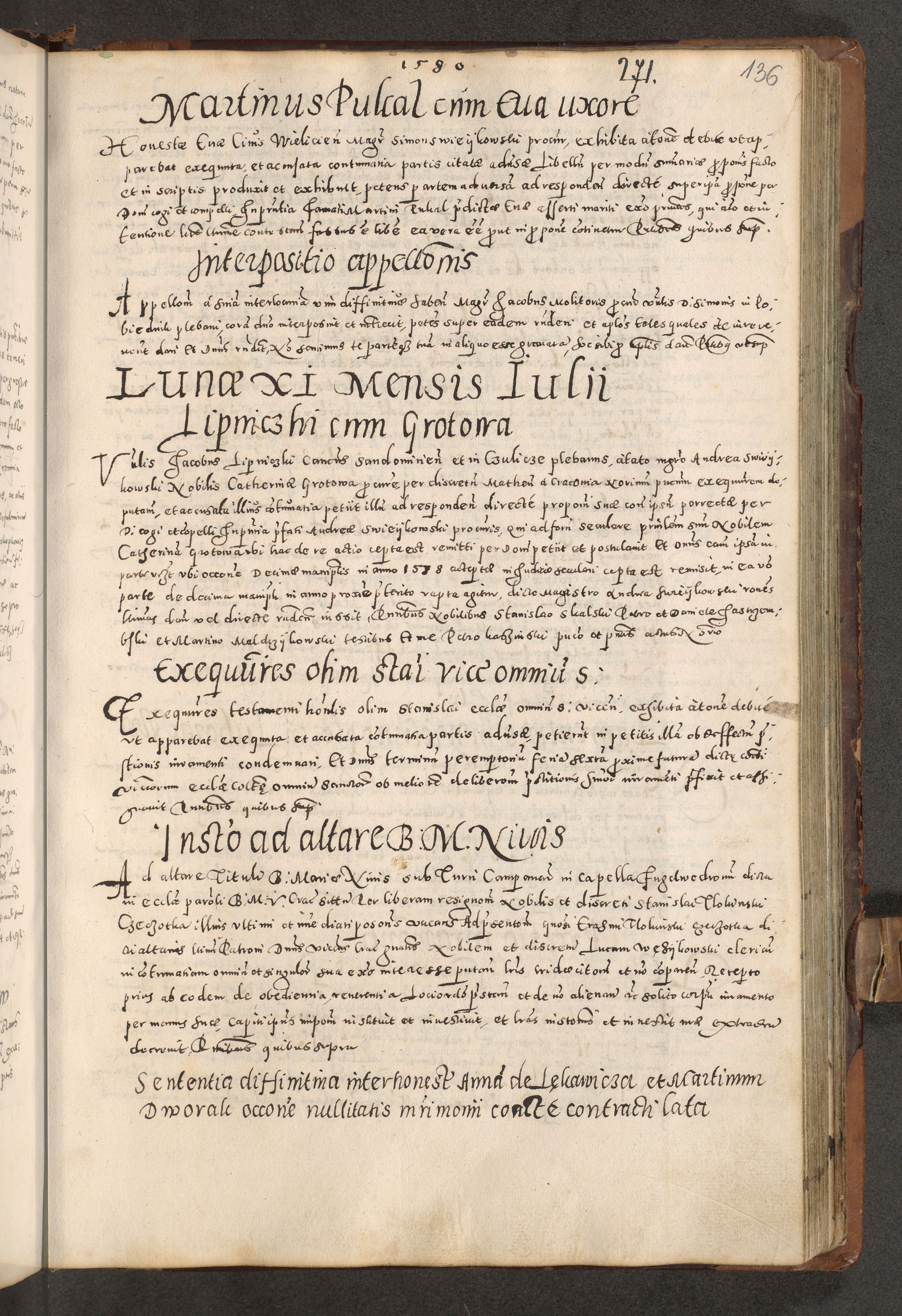 Acta actorum causarum tam diffinitivarum quam interloquutoriarum sententiarum decretorum obligationum quietatorum constuorum pro reverendum coram Reverendo Domino Alberto Nininski Custode Sandecensis Canonico et Archipresbitero Viccarioque in Spiritualibus ac Officiali Generali Cracoviensis ad Annum Domini Millesimum Qumgentesimum Septuagentesimum Nonum cuius Judictio septima Pontificat SS. nostri Domini Gregory pp. tredecimi Anno septimo inchoantur faliciter