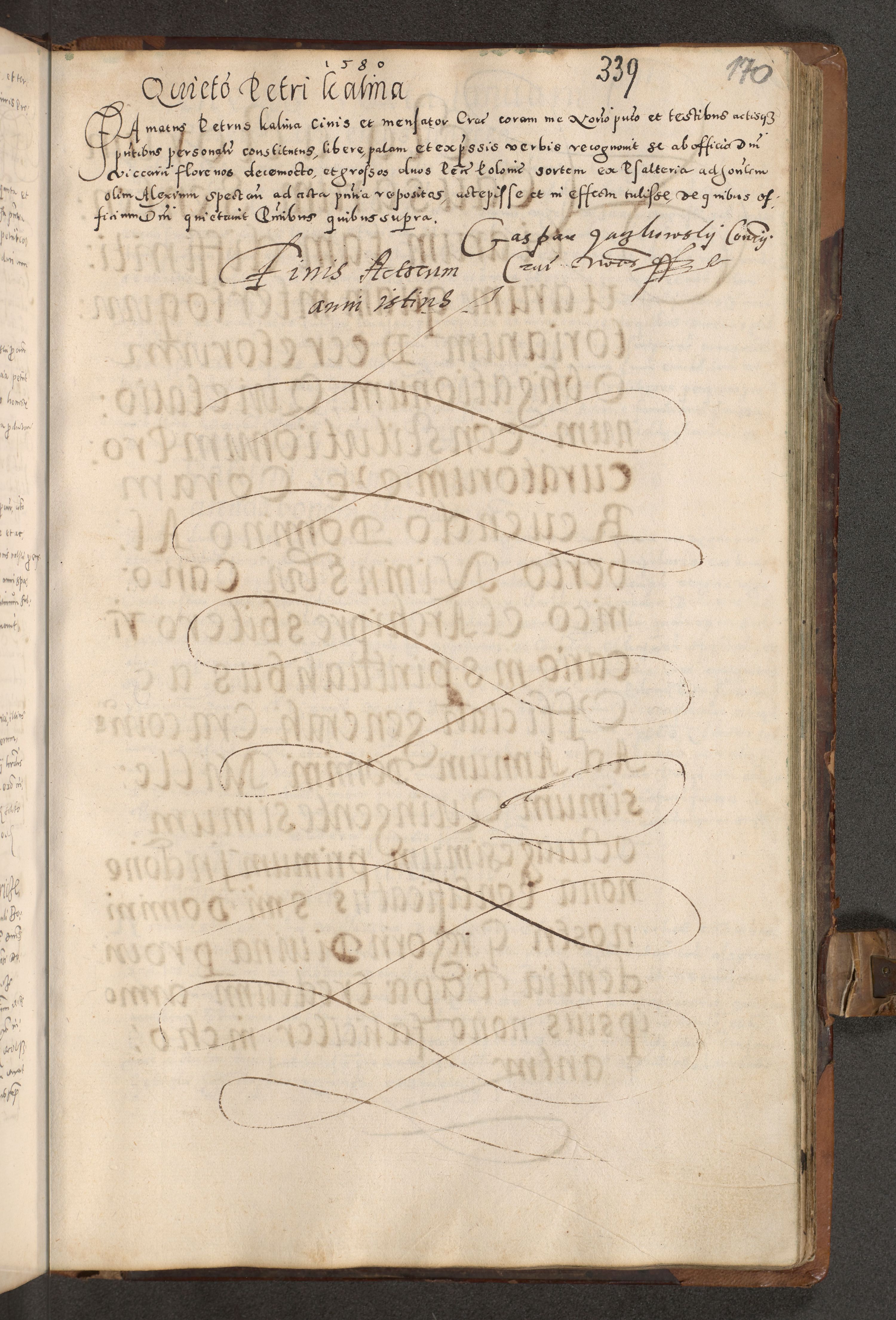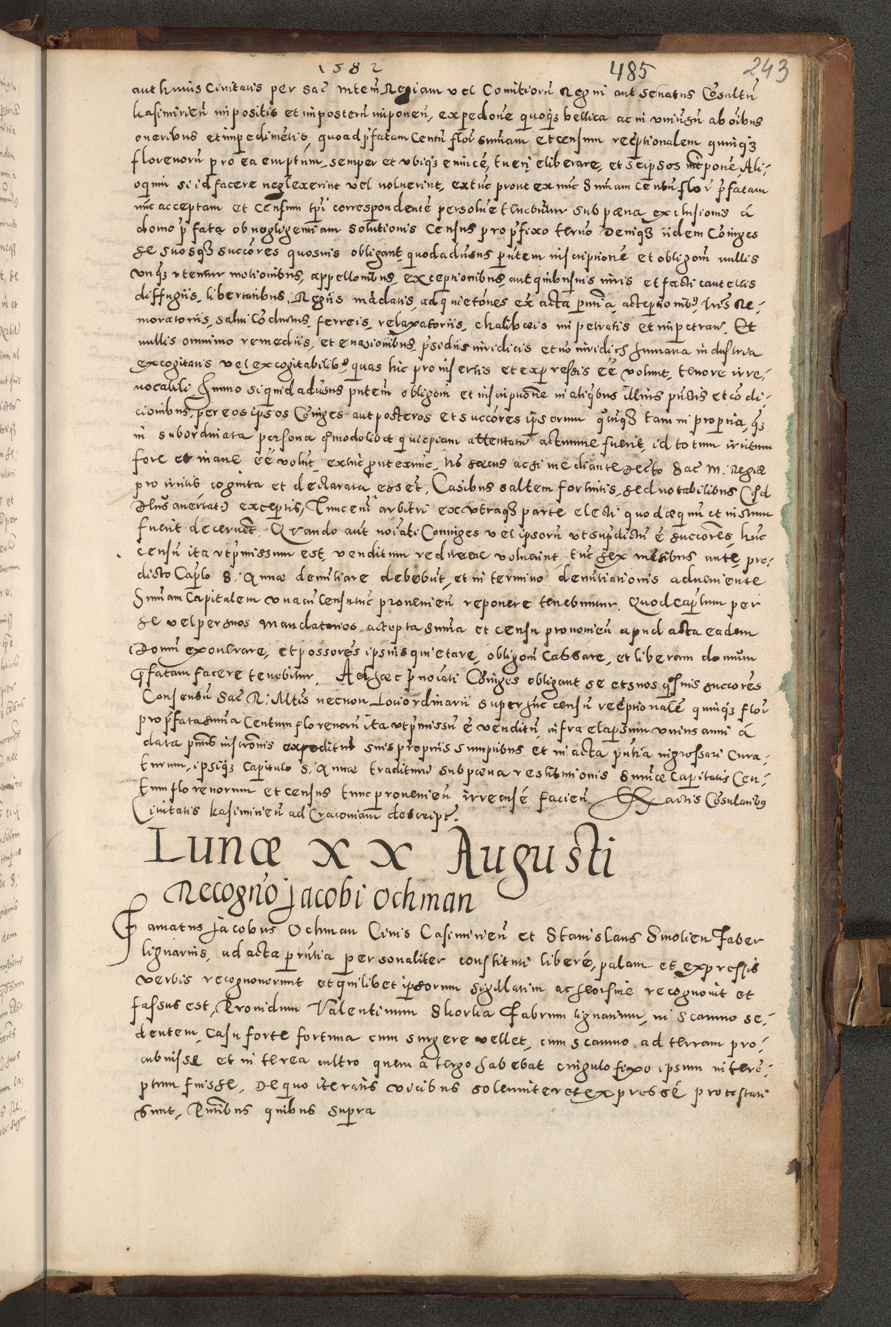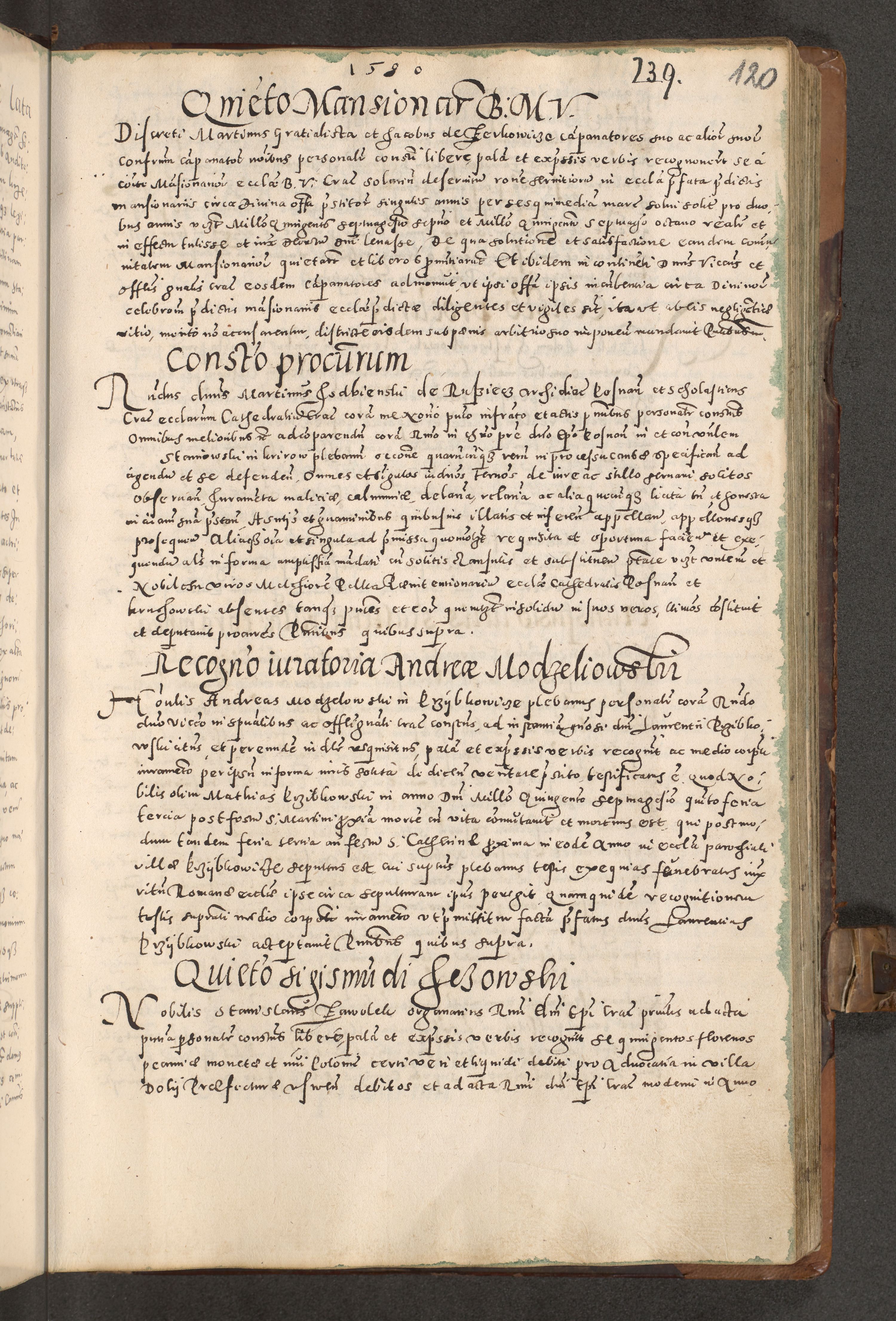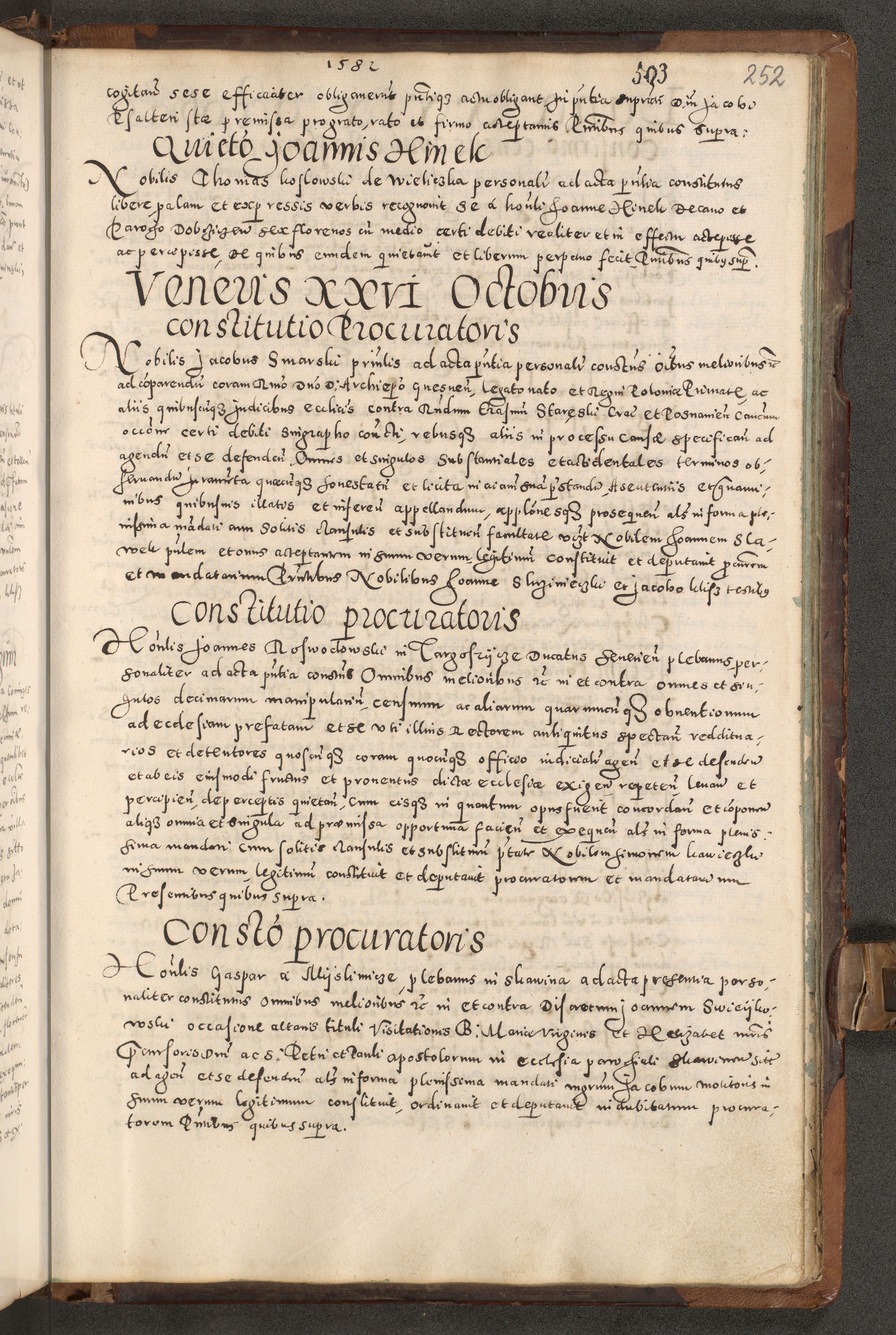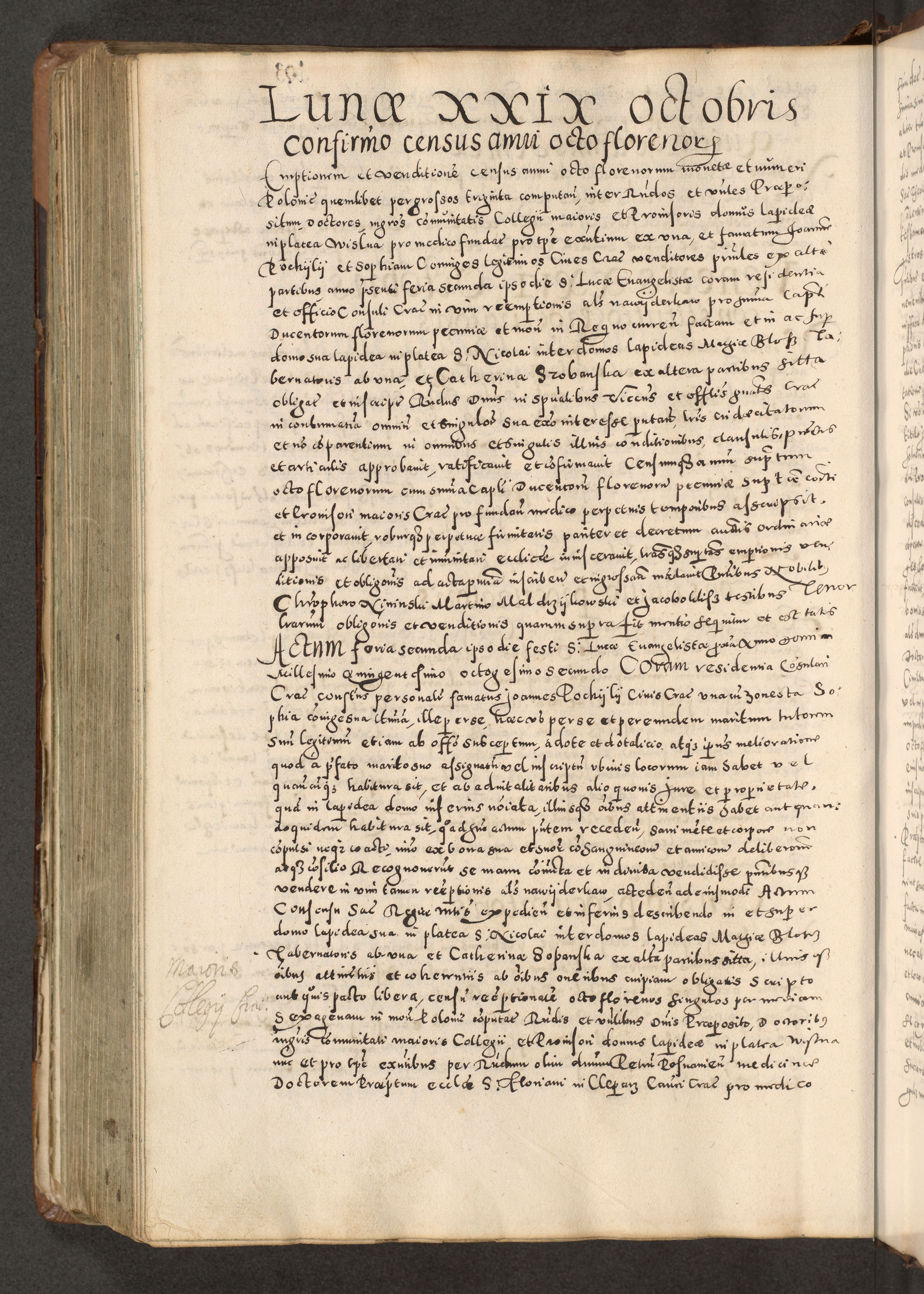 Acta actorum causarum tam diffinitivarum quam interloquutoriarum sententiarum decretorum obligationum quietatorum constuorum pro reverendum coram Reverendo Domino Alberto Nininski Custode Sandecensis Canonico et Archipresbitero Viccarioque in Spiritualibus ac Officiali Generali Cracoviensis ad Annum Domini Millesimum Qumgentesimum Septuagentesimum Nonum cuius Judictio septima Pontificat SS. nostri Domini Gregory pp. tredecimi Anno septimo inchoantur faliciter