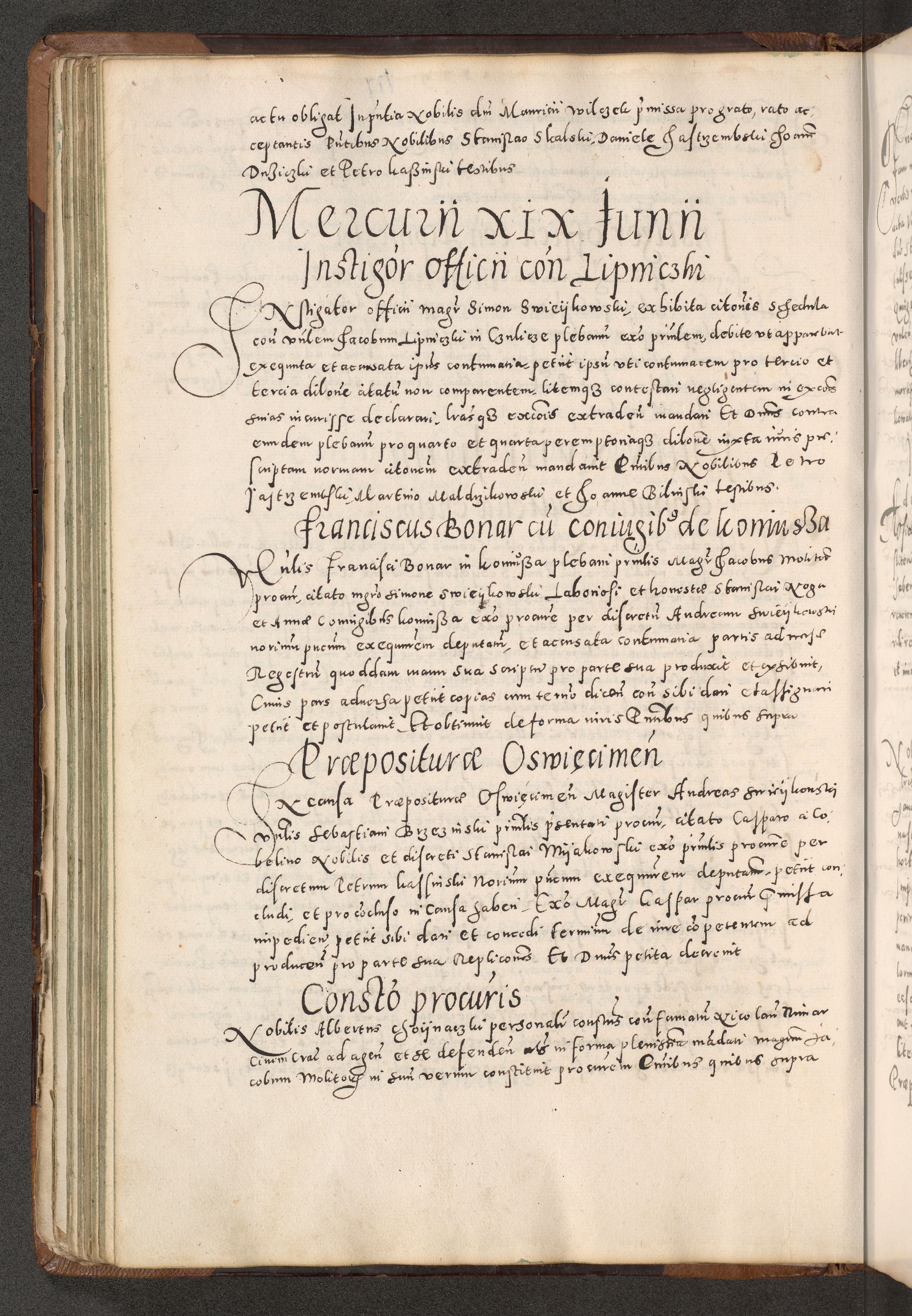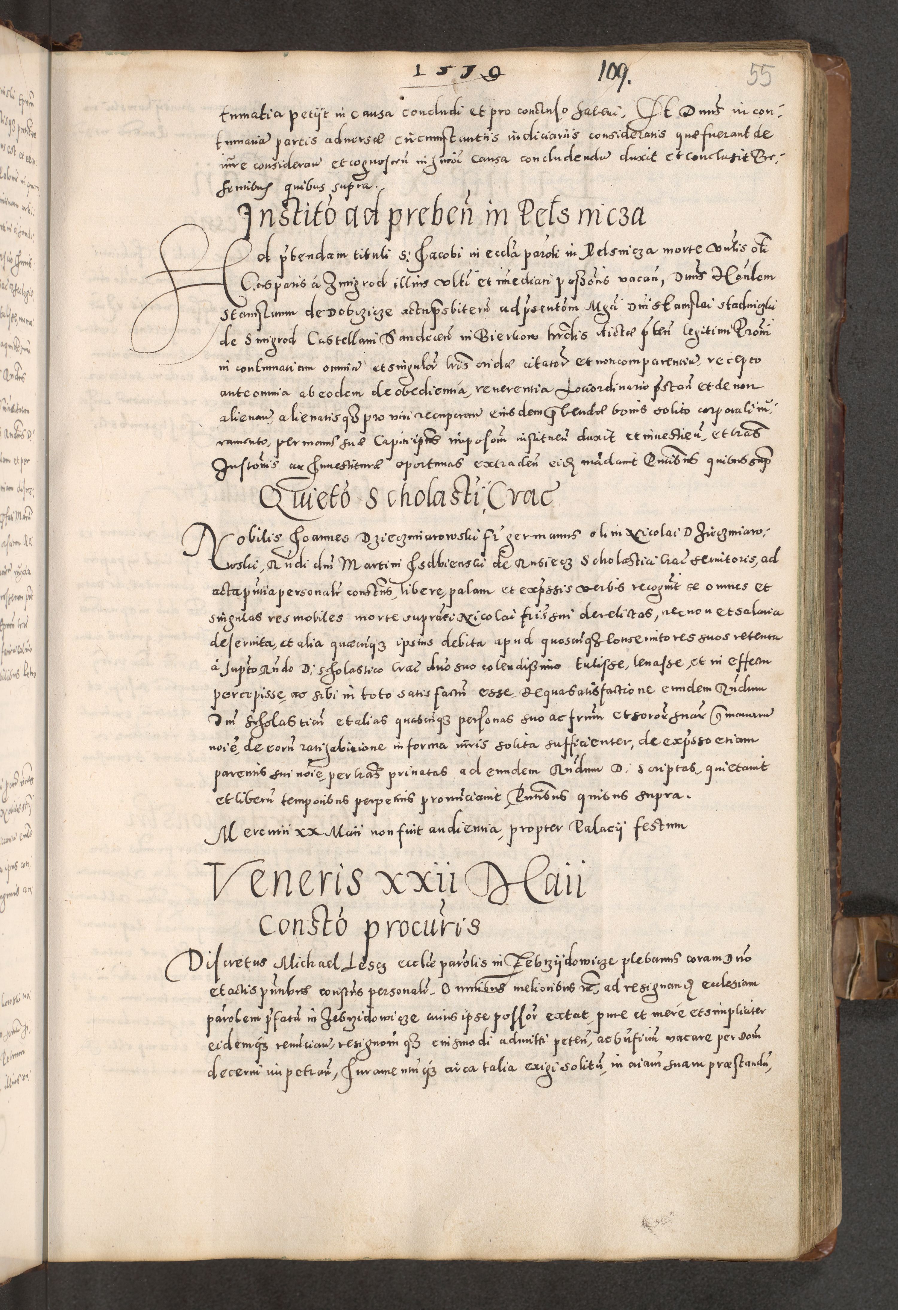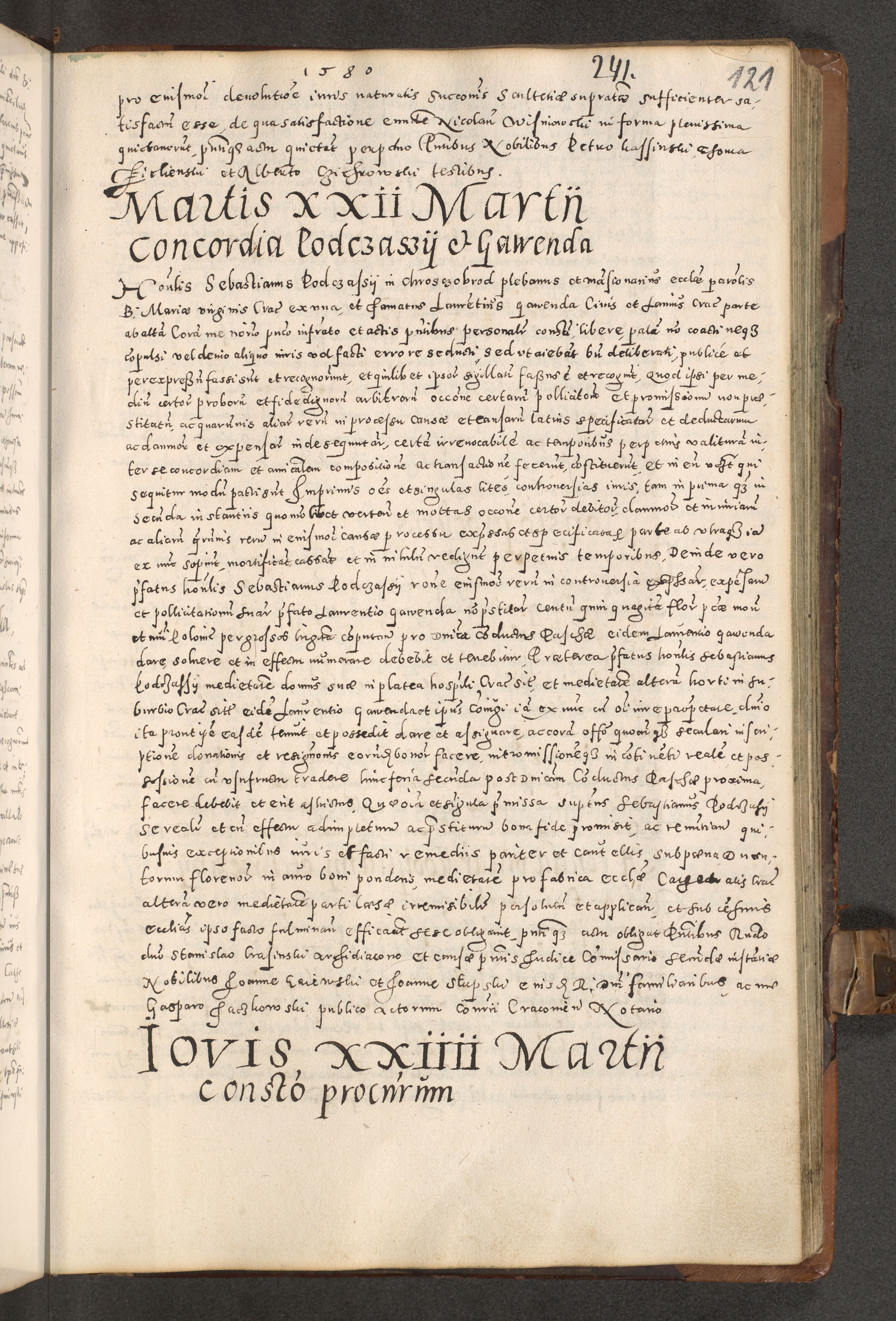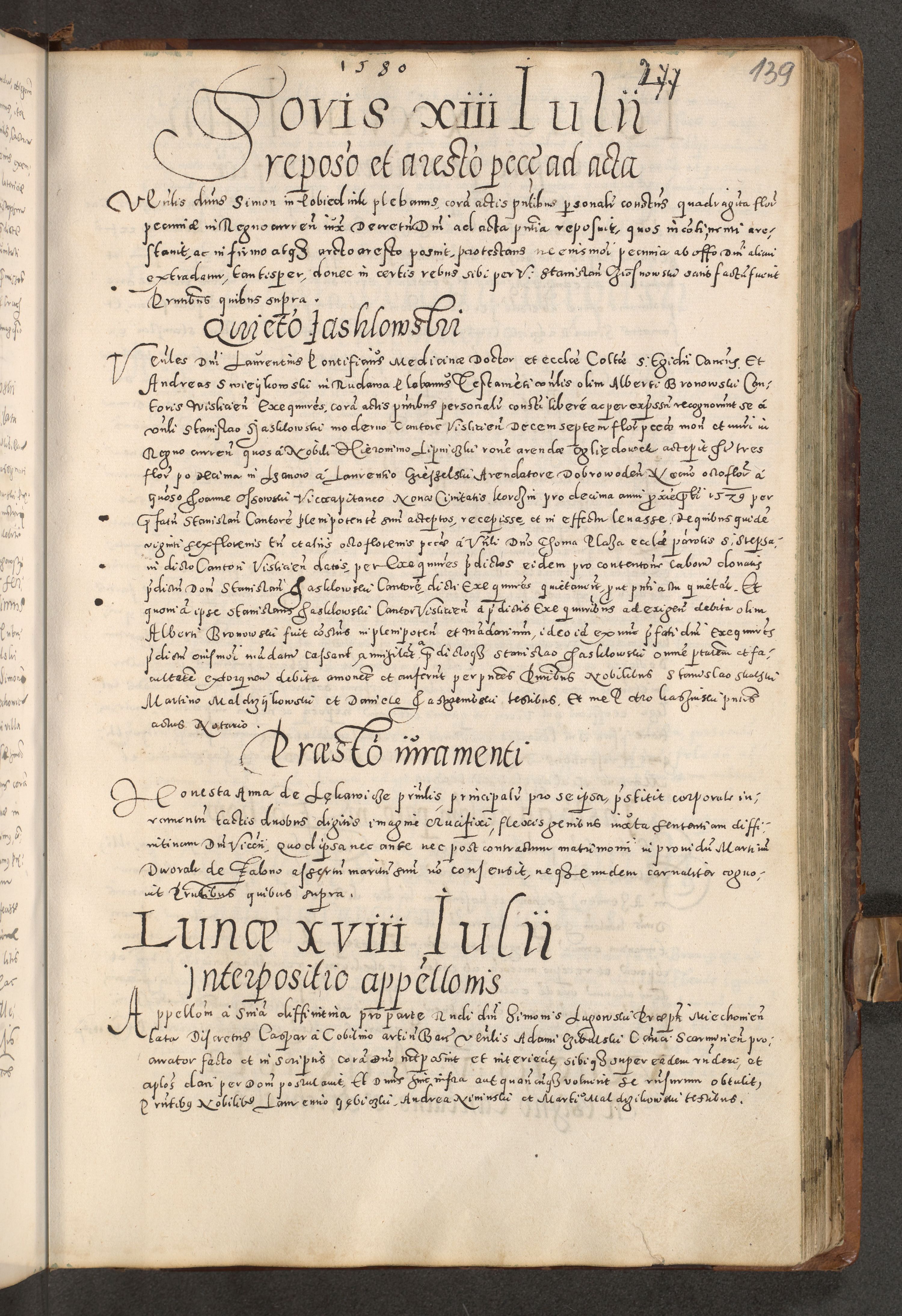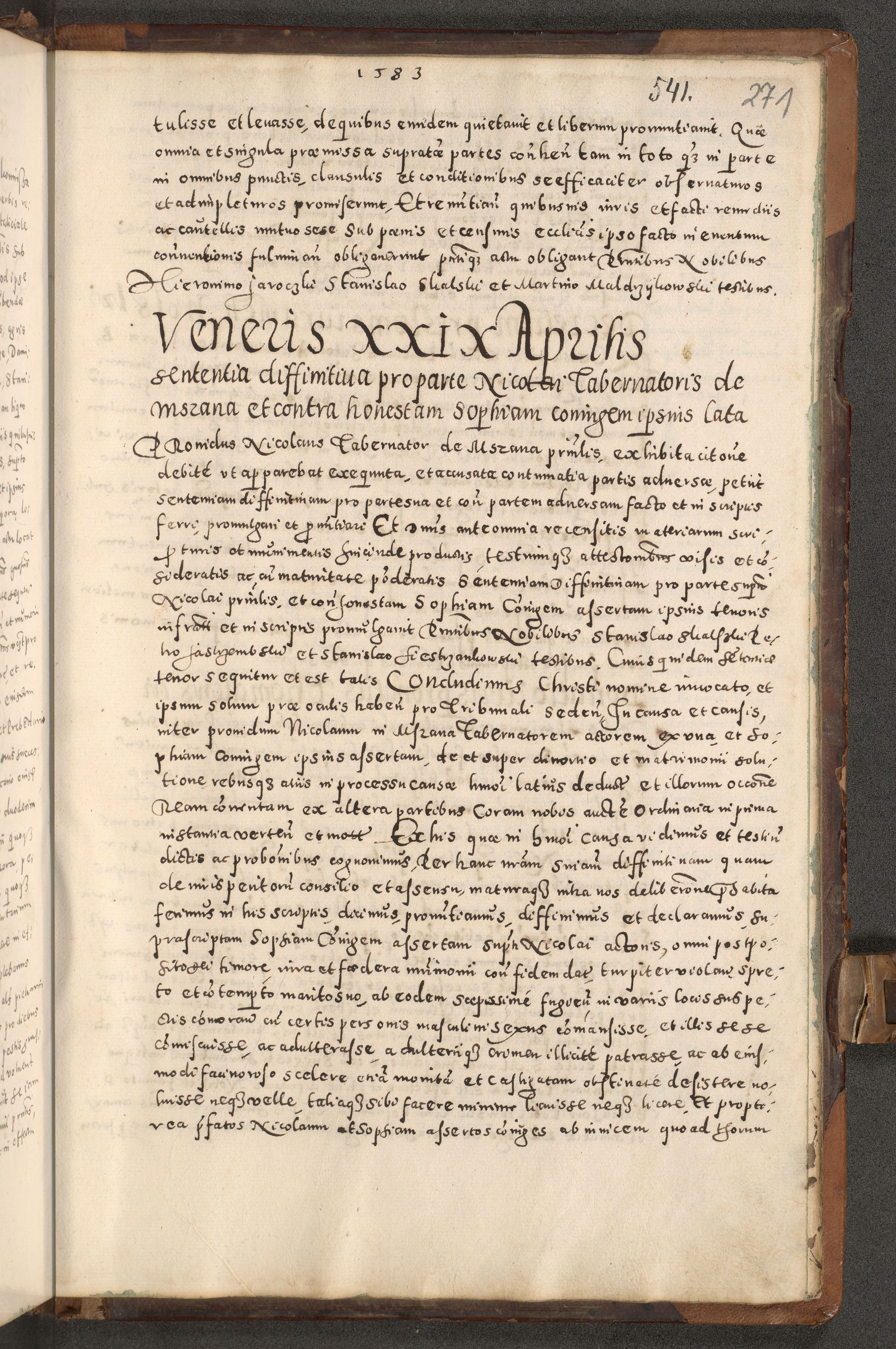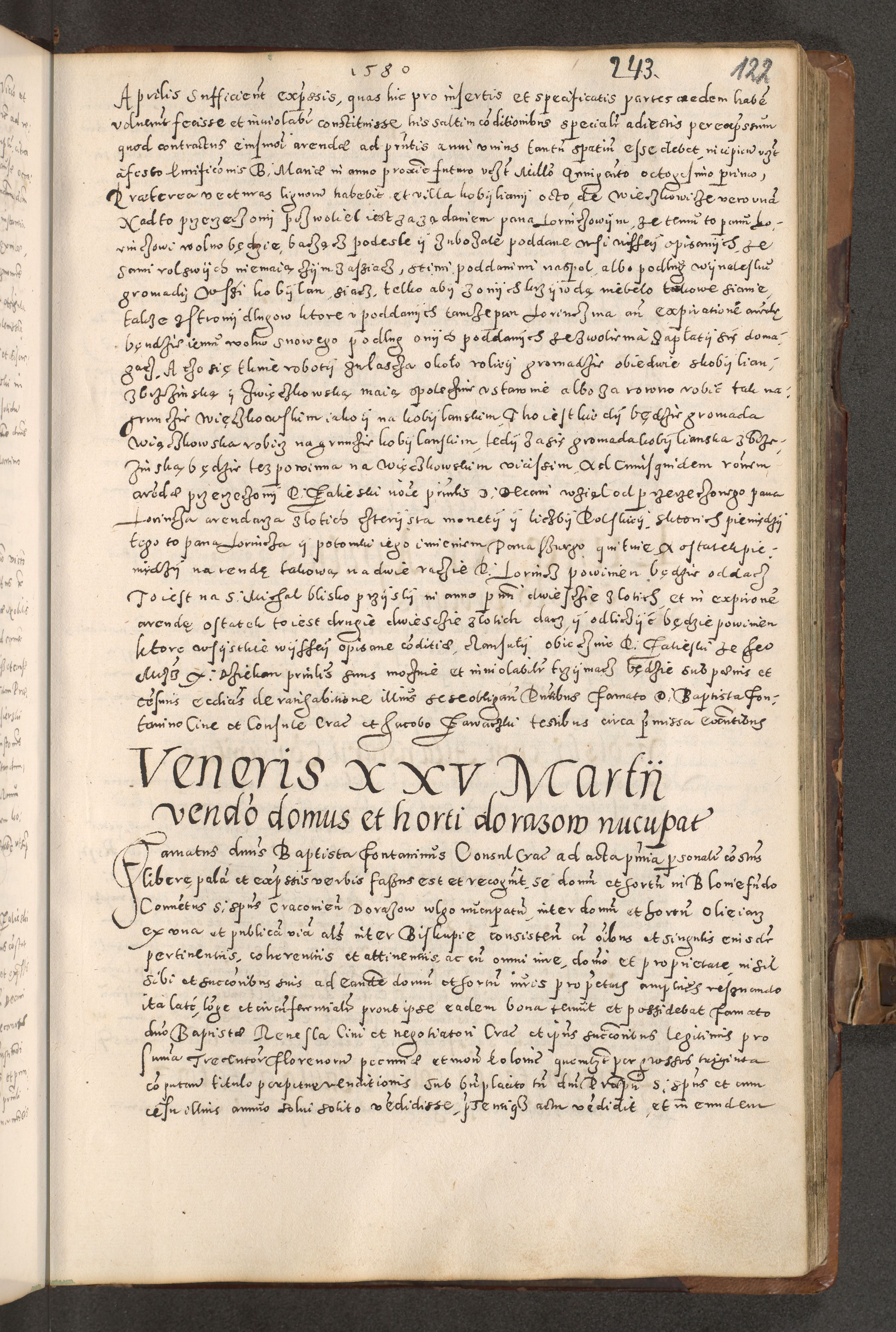 Acta actorum causarum tam diffinitivarum quam interloquutoriarum sententiarum decretorum obligationum quietatorum constuorum pro reverendum coram Reverendo Domino Alberto Nininski Custode Sandecensis Canonico et Archipresbitero Viccarioque in Spiritualibus ac Officiali Generali Cracoviensis ad Annum Domini Millesimum Qumgentesimum Septuagentesimum Nonum cuius Judictio septima Pontificat SS. nostri Domini Gregory pp. tredecimi Anno septimo inchoantur faliciter