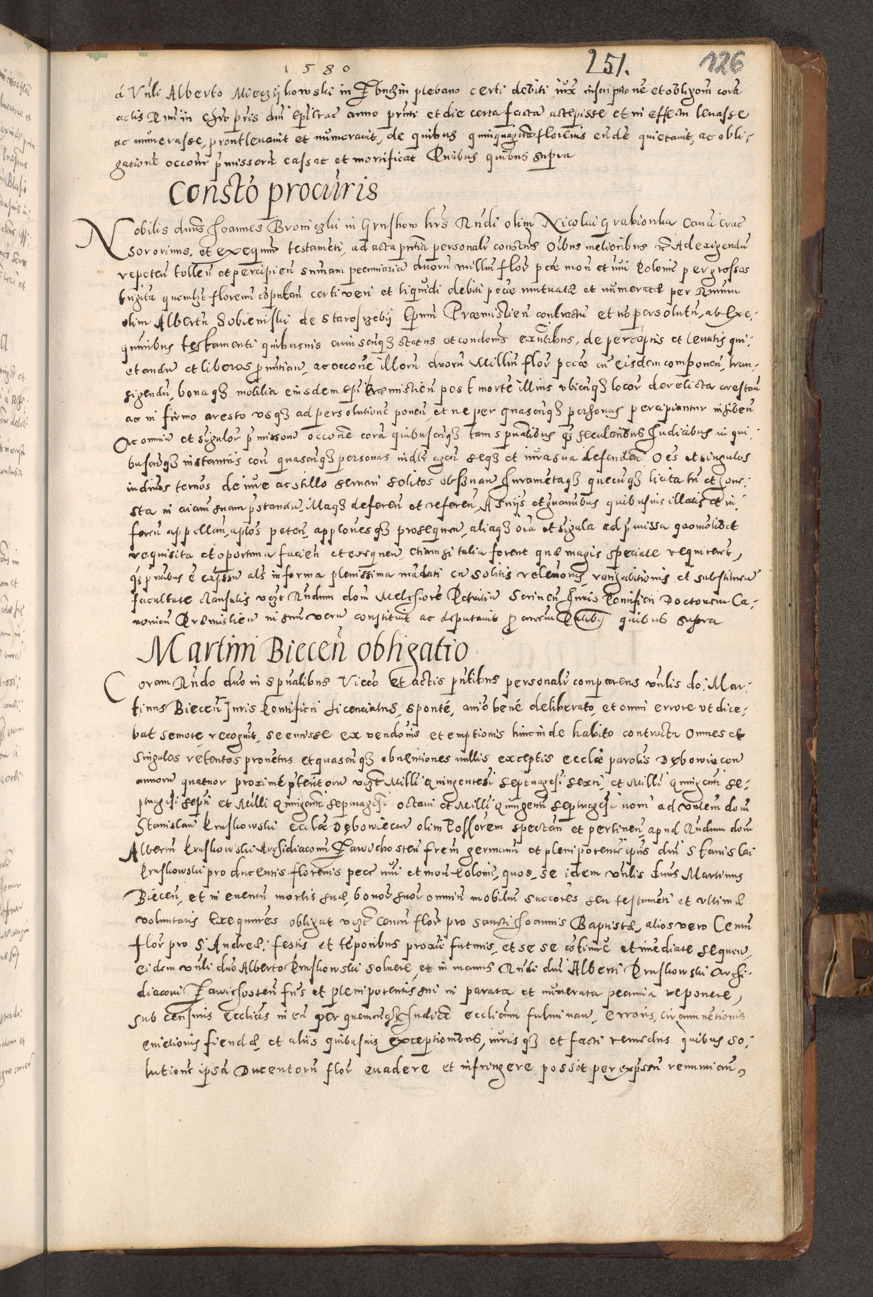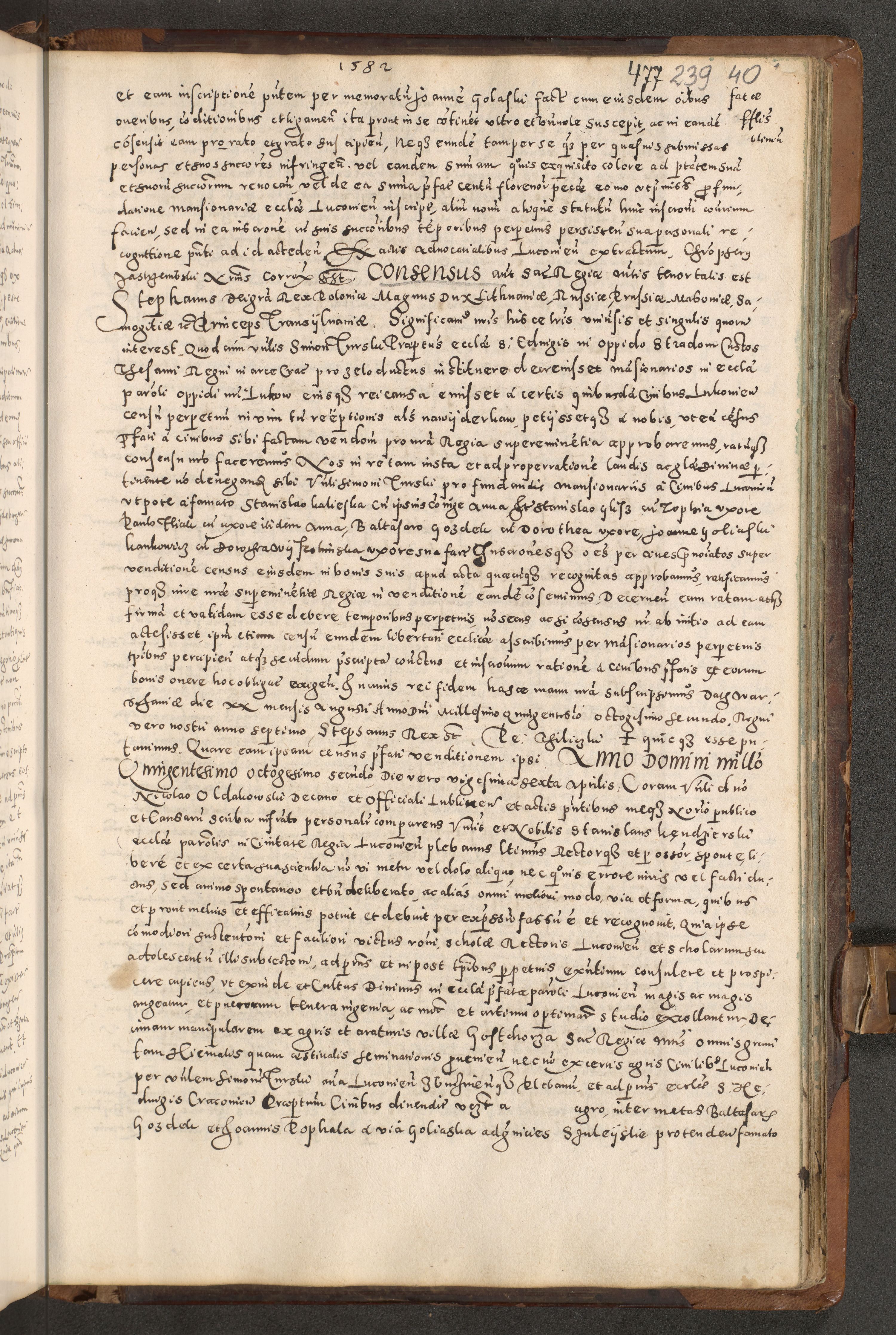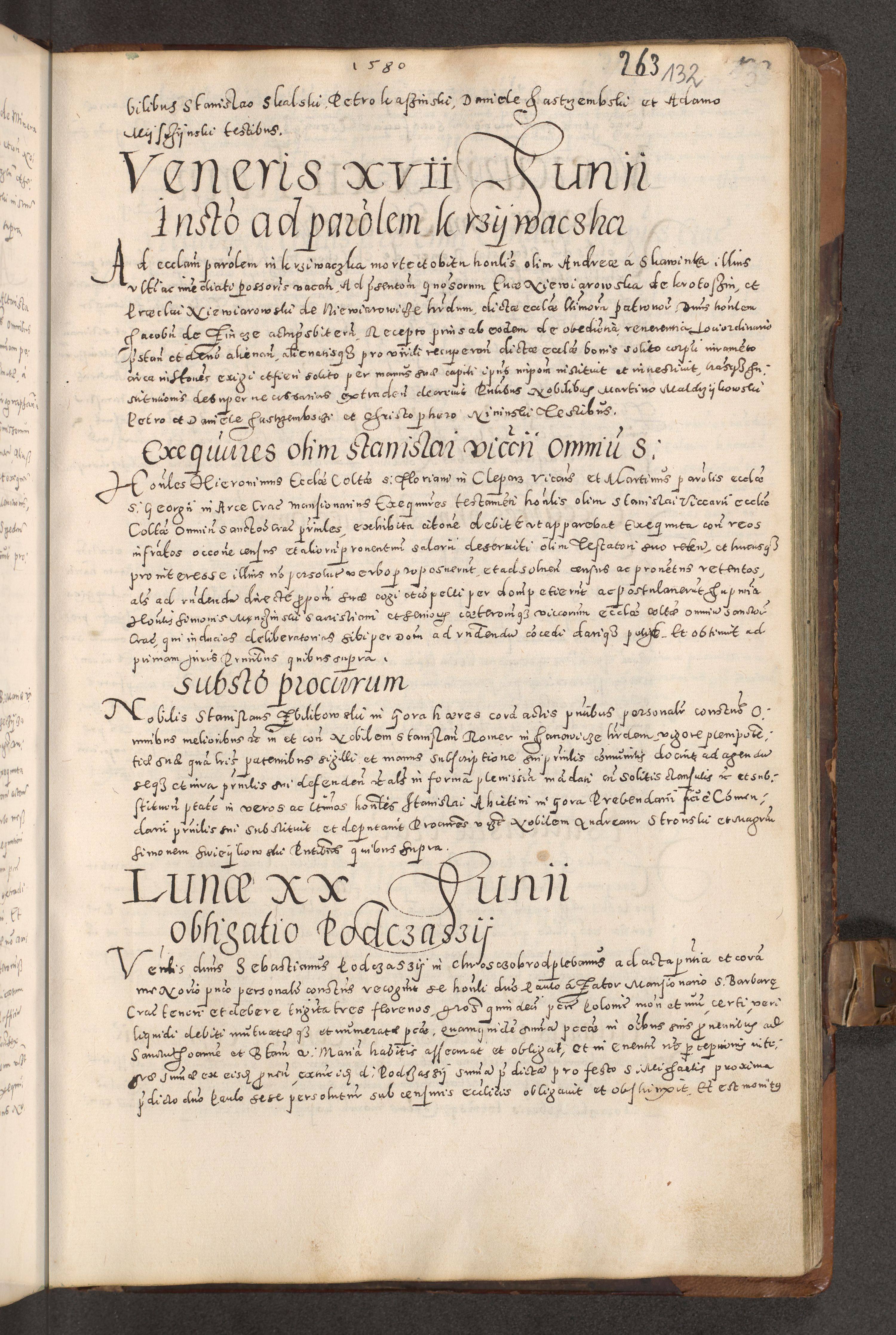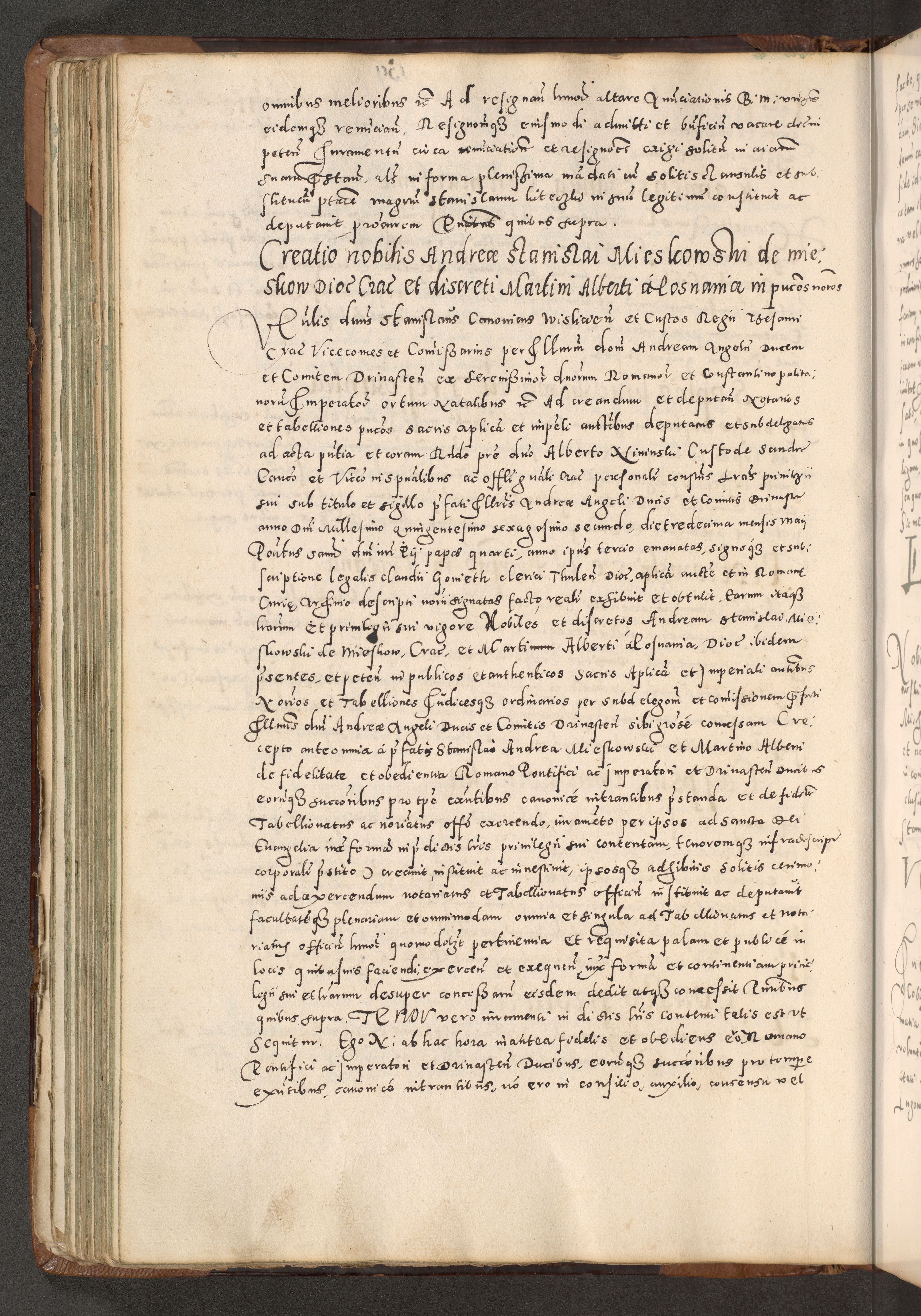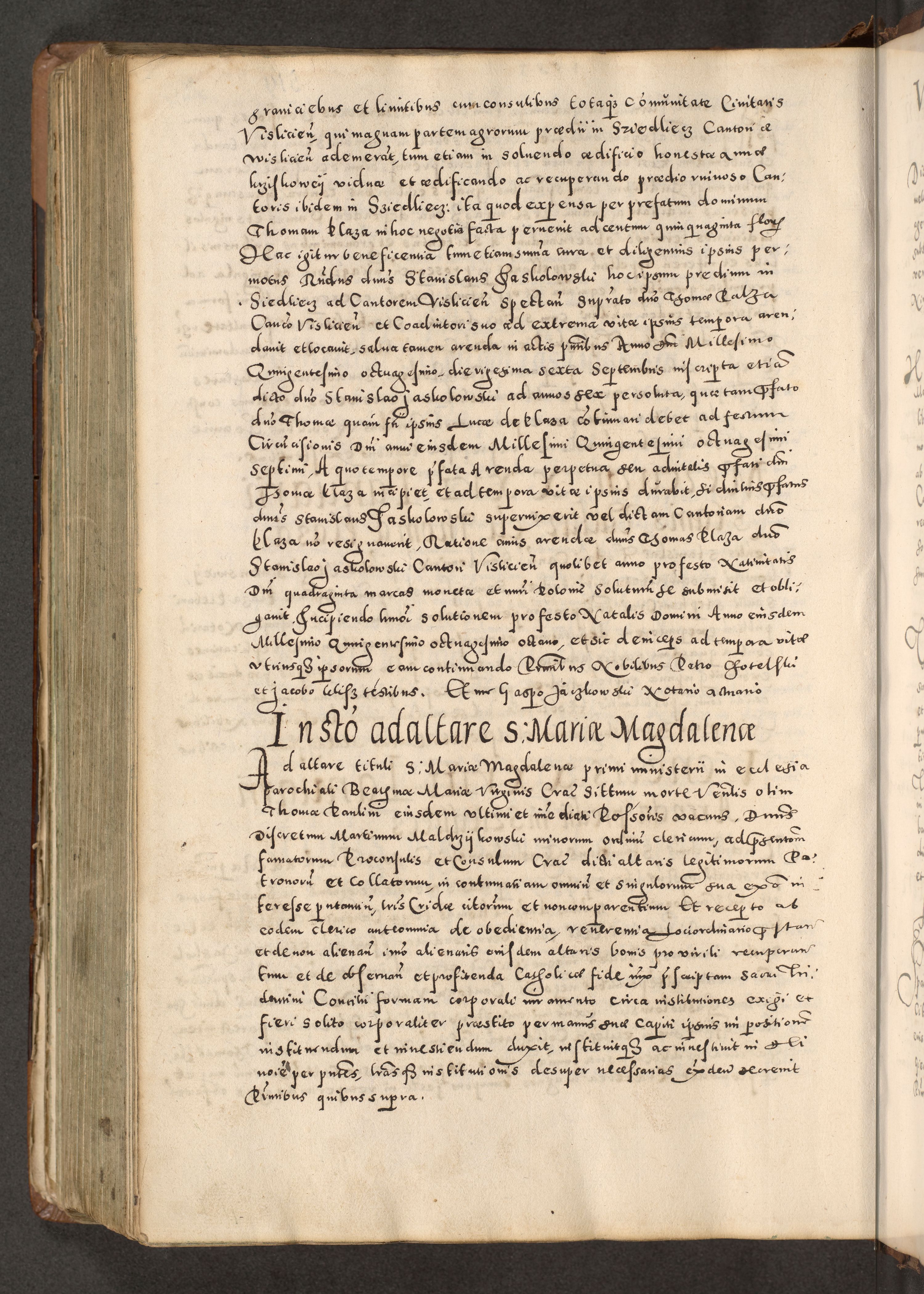 Acta actorum causarum tam diffinitivarum quam interloquutoriarum sententiarum decretorum obligationum quietatorum constuorum pro reverendum coram Reverendo Domino Alberto Nininski Custode Sandecensis Canonico et Archipresbitero Viccarioque in Spiritualibus ac Officiali Generali Cracoviensis ad Annum Domini Millesimum Qumgentesimum Septuagentesimum Nonum cuius Judictio septima Pontificat SS. nostri Domini Gregory pp. tredecimi Anno septimo inchoantur faliciter
