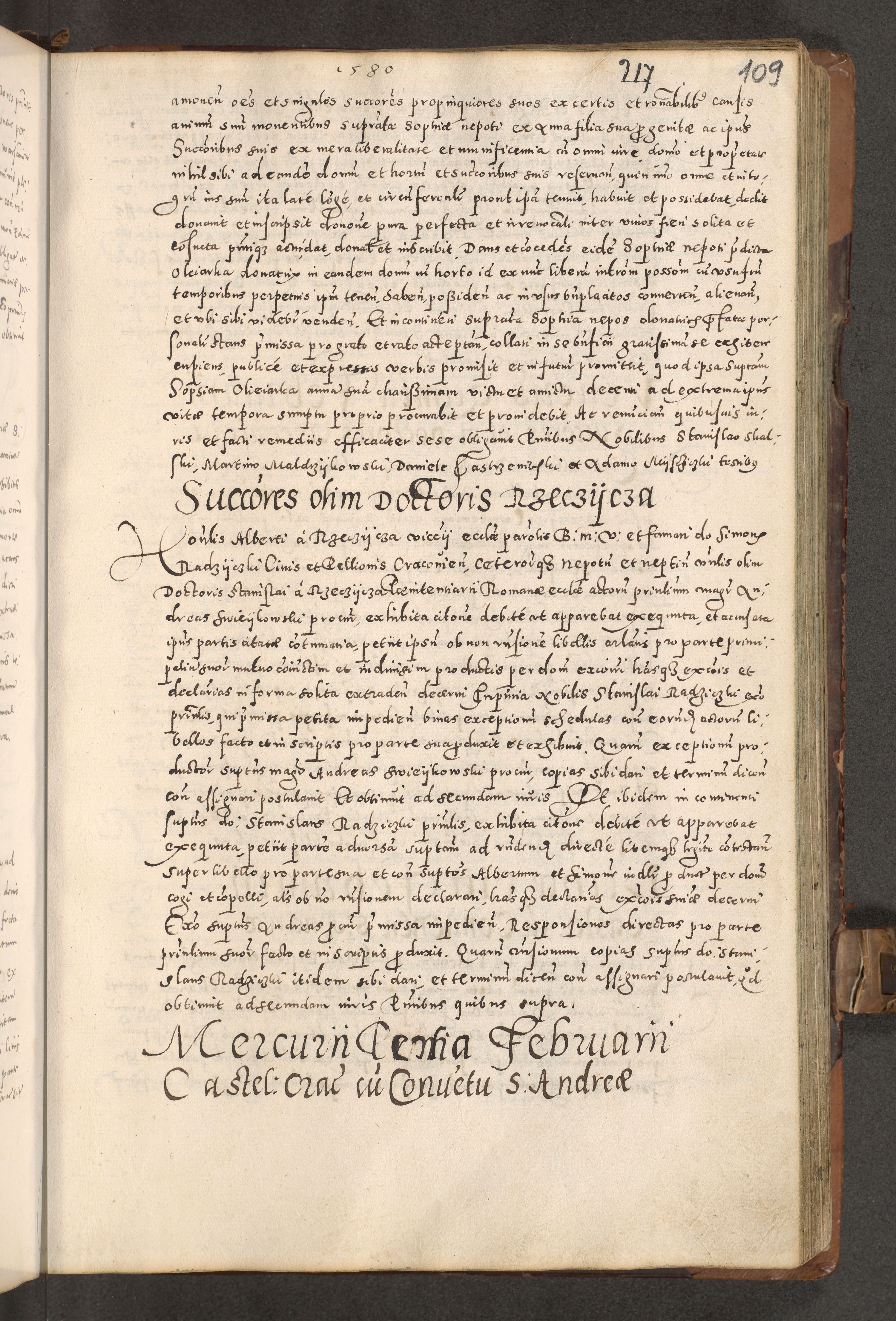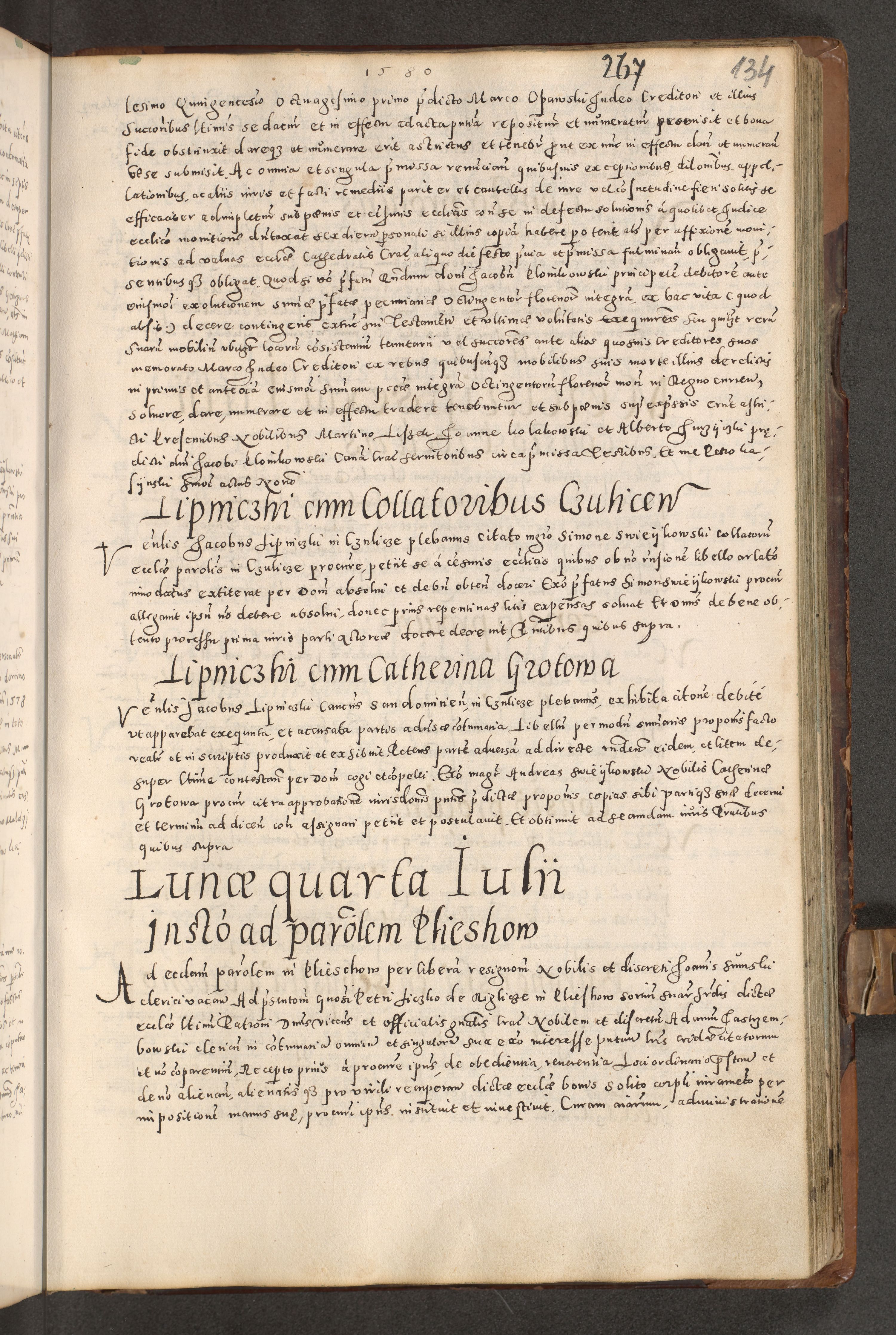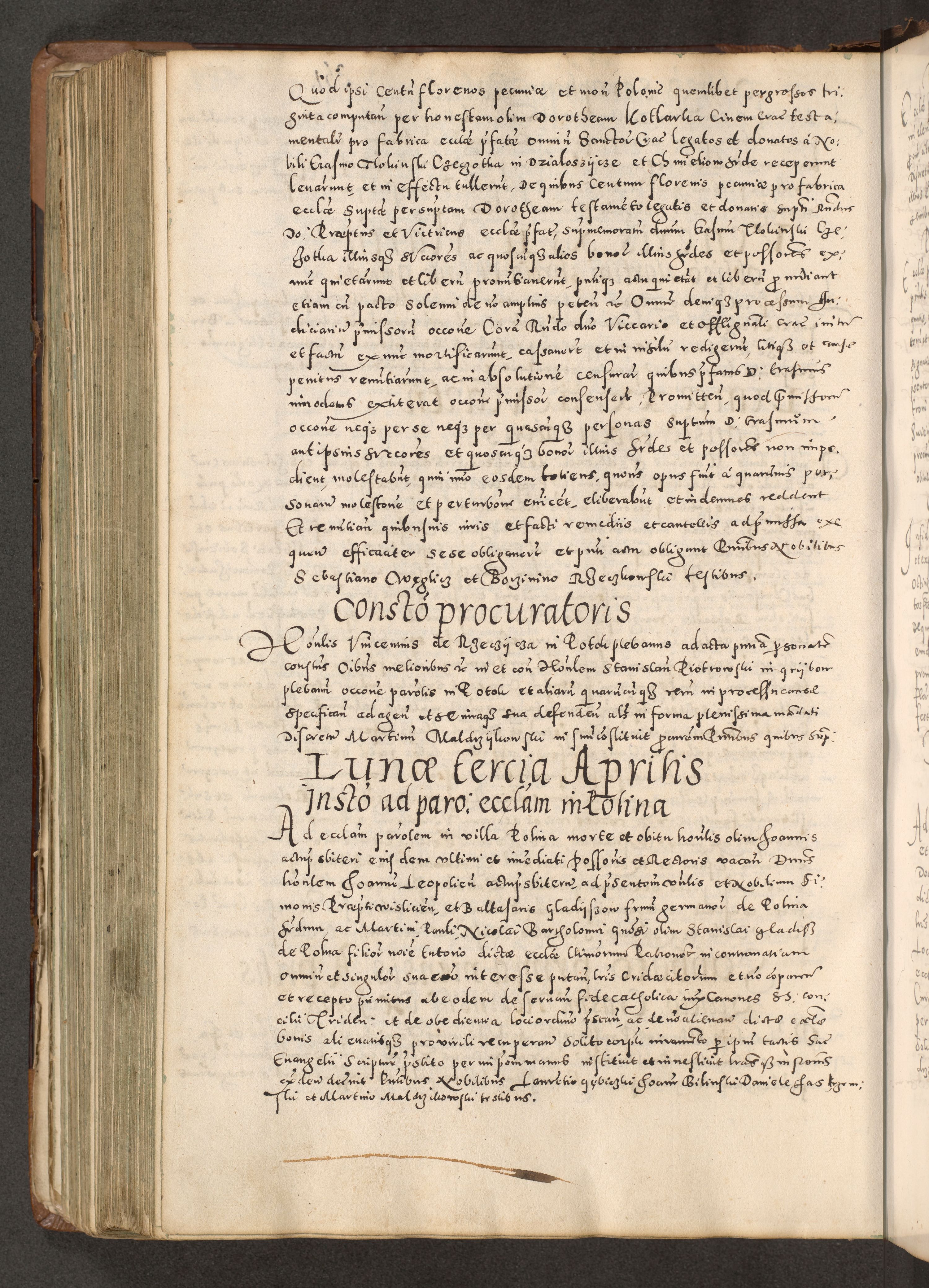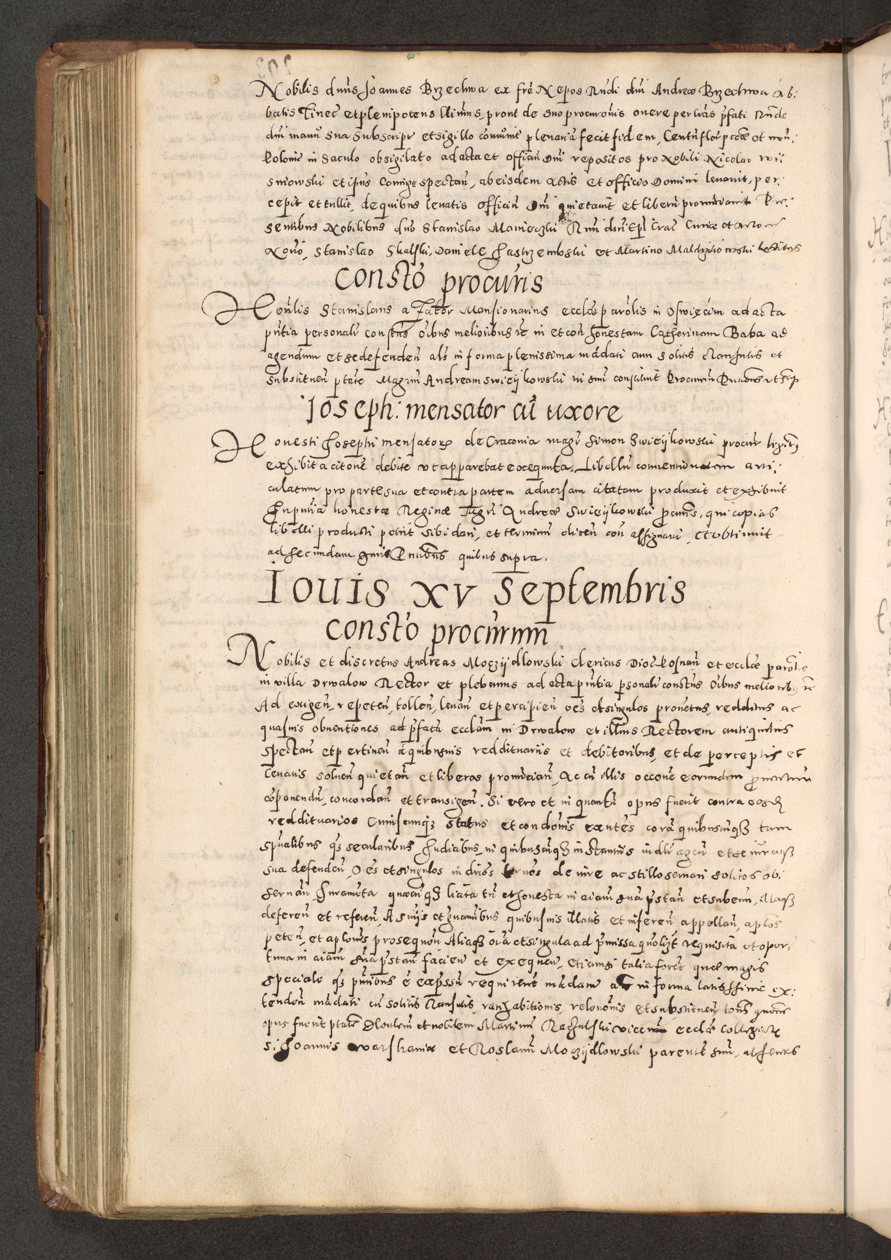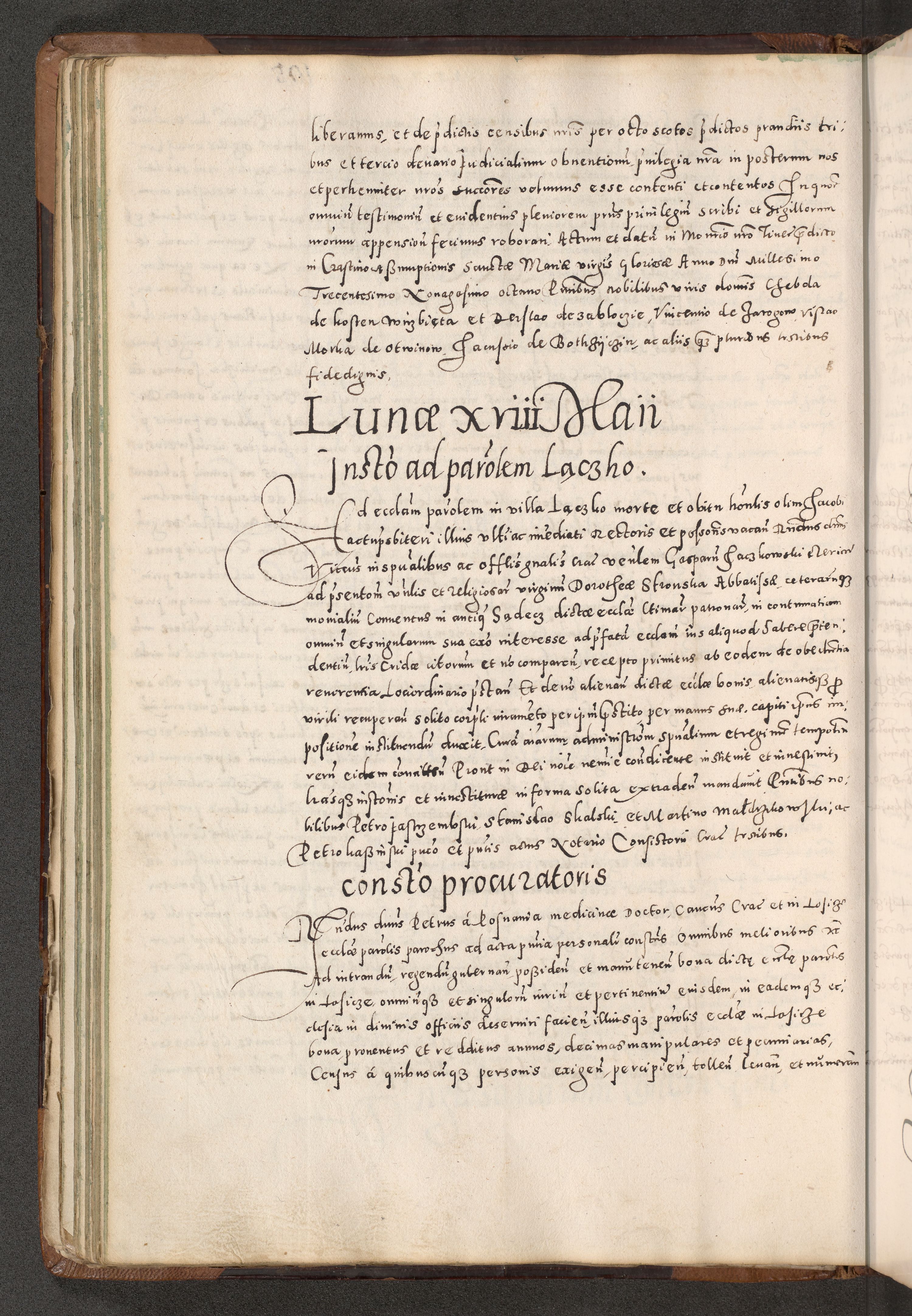 Acta actorum causarum tam diffinitivarum quam interloquutoriarum sententiarum decretorum obligationum quietatorum constuorum pro reverendum coram Reverendo Domino Alberto Nininski Custode Sandecensis Canonico et Archipresbitero Viccarioque in Spiritualibus ac Officiali Generali Cracoviensis ad Annum Domini Millesimum Qumgentesimum Septuagentesimum Nonum cuius Judictio septima Pontificat SS. nostri Domini Gregory pp. tredecimi Anno septimo inchoantur faliciter