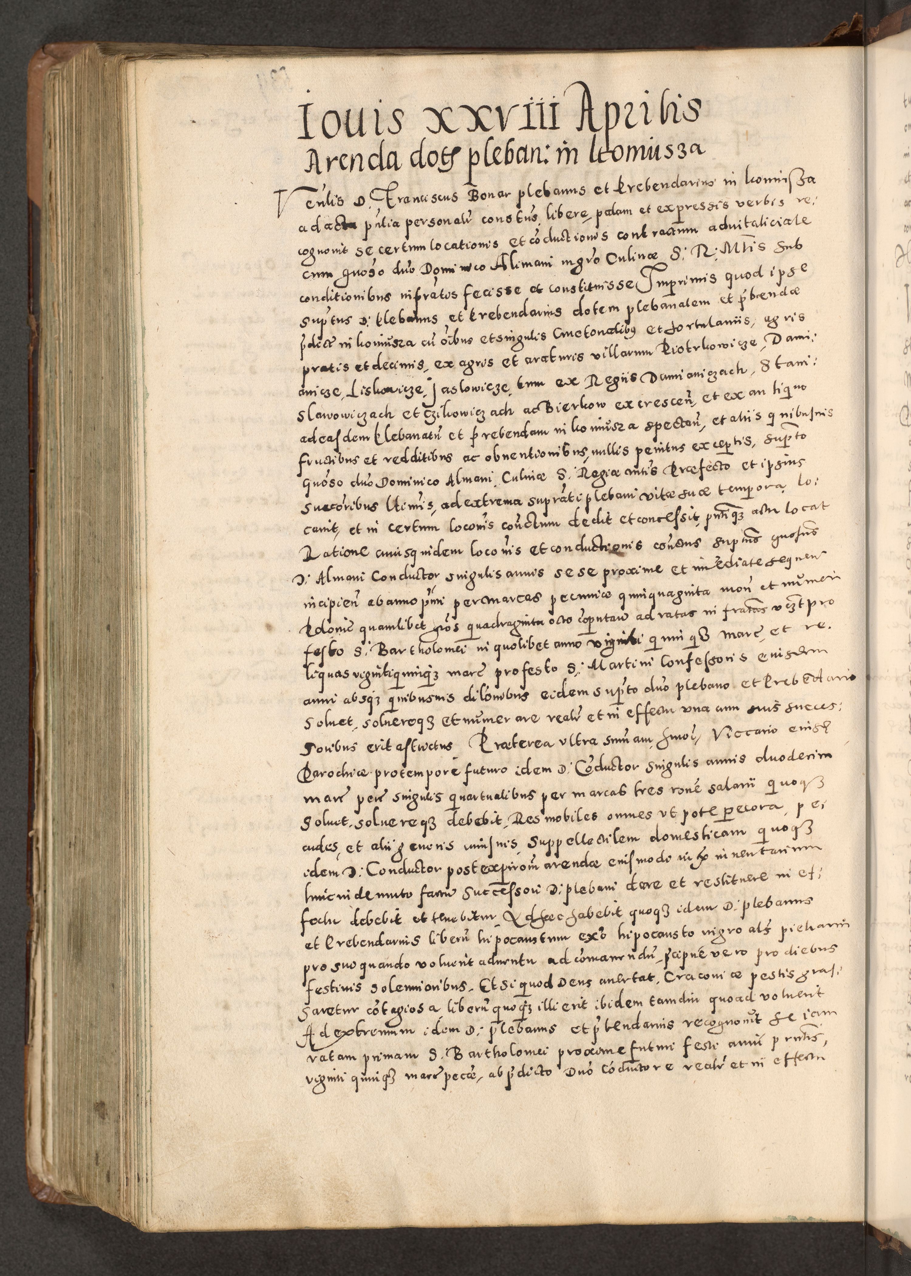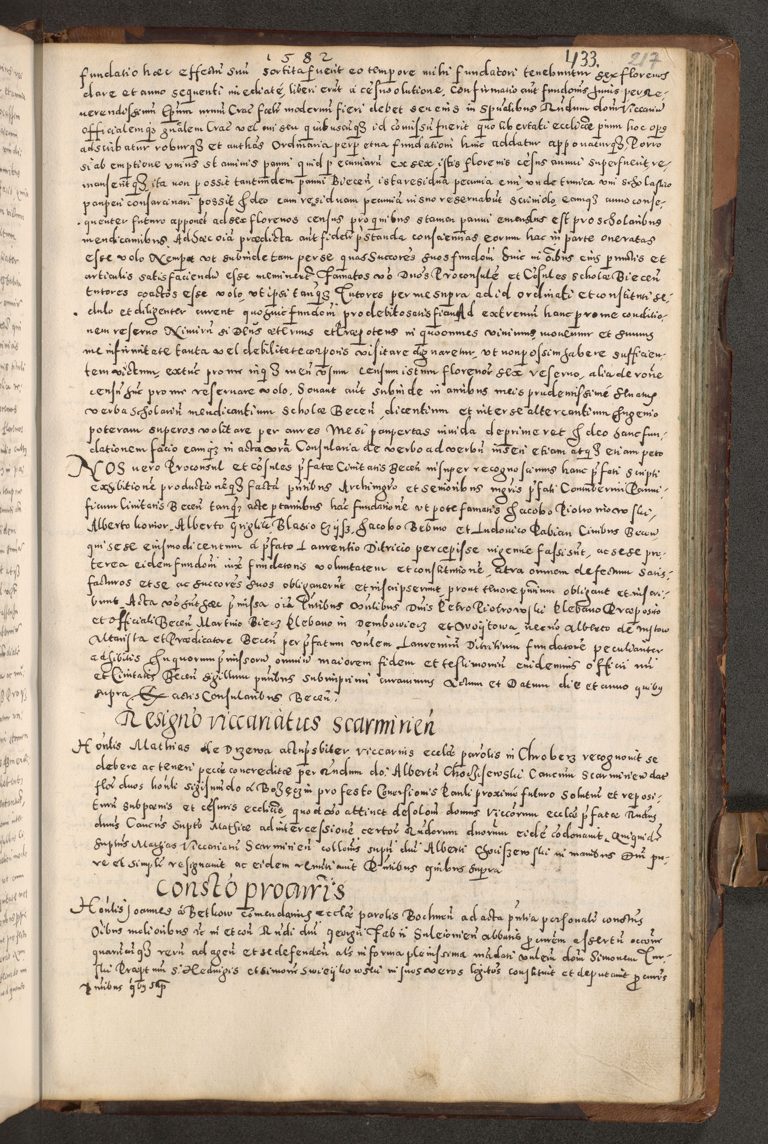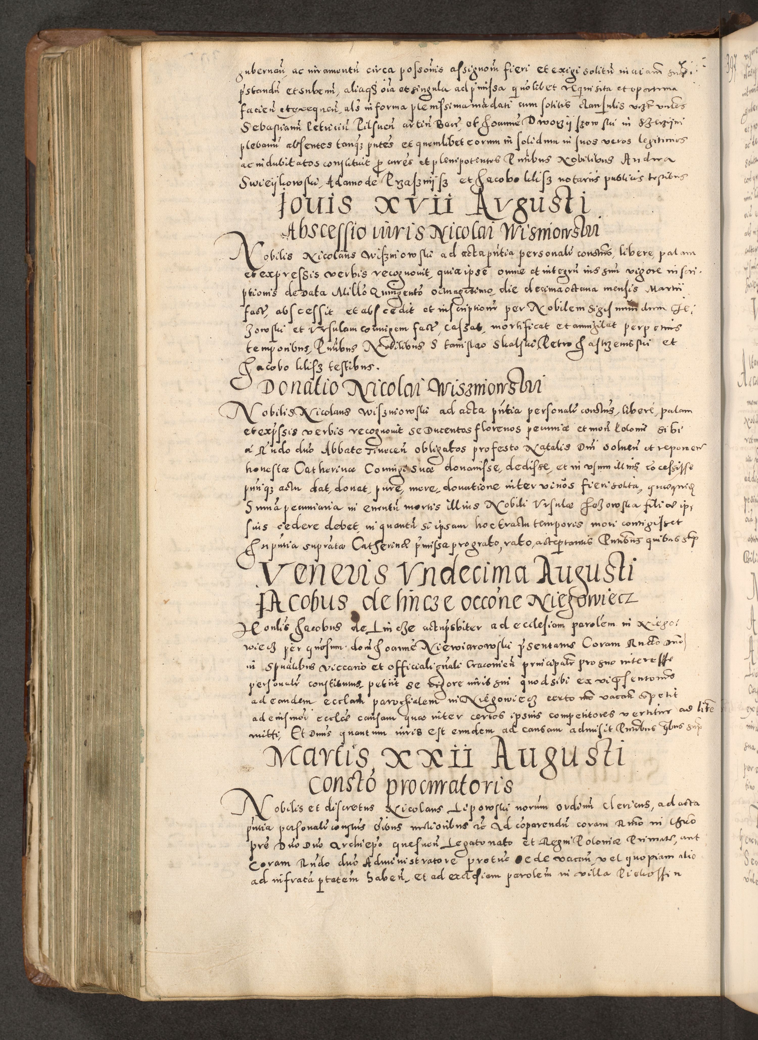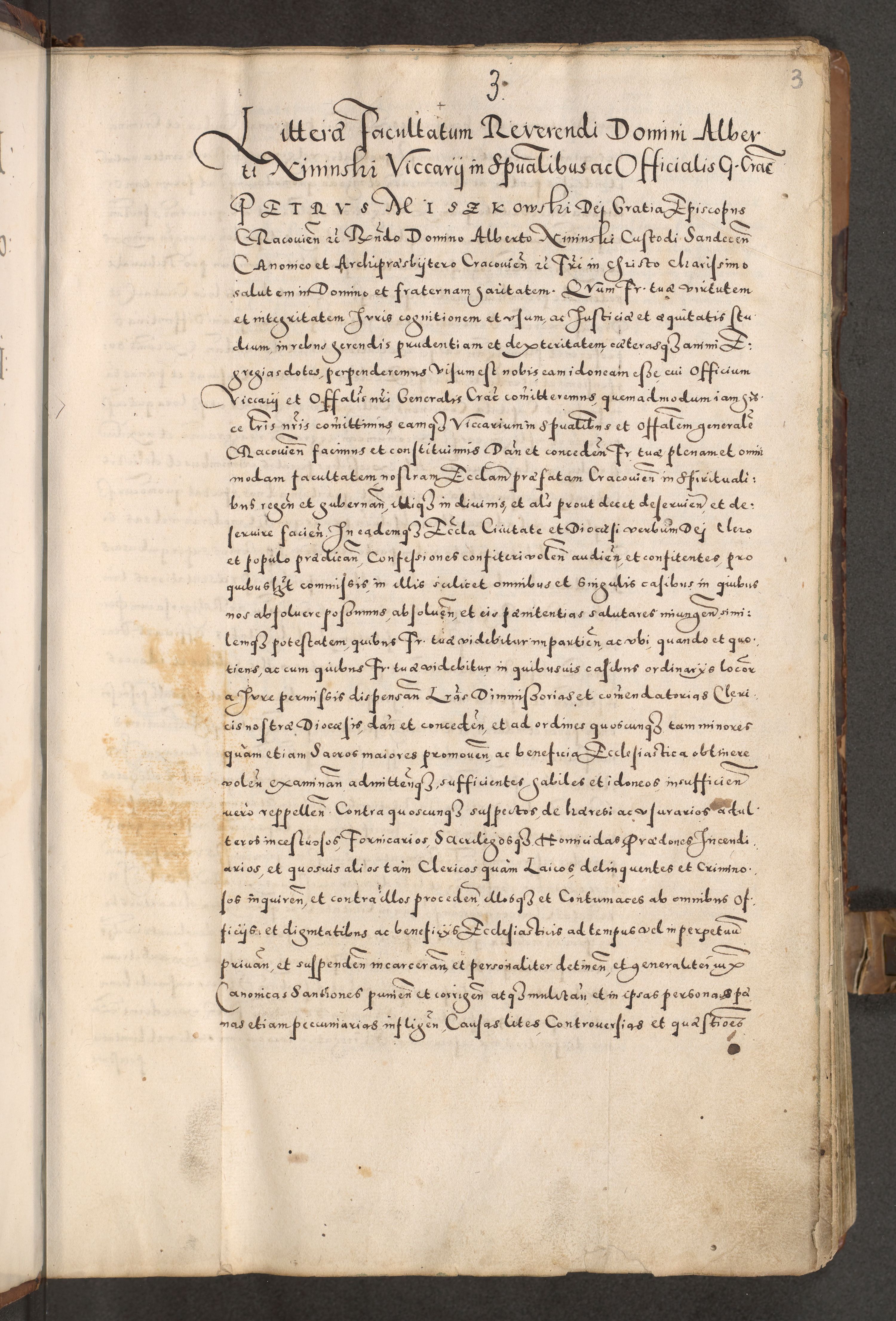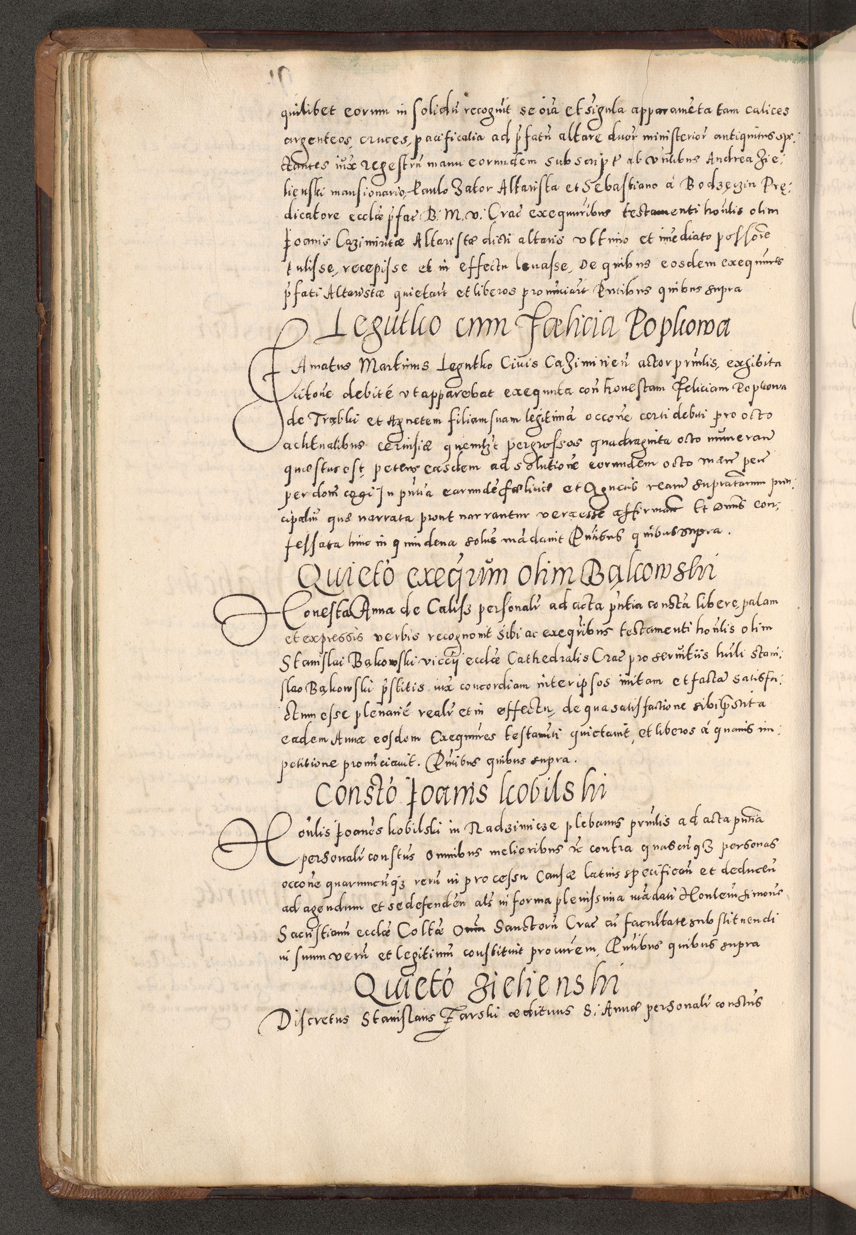 Acta actorum causarum tam diffinitivarum quam interloquutoriarum sententiarum decretorum obligationum quietatorum constuorum pro reverendum coram Reverendo Domino Alberto Nininski Custode Sandecensis Canonico et Archipresbitero Viccarioque in Spiritualibus ac Officiali Generali Cracoviensis ad Annum Domini Millesimum Qumgentesimum Septuagentesimum Nonum cuius Judictio septima Pontificat SS. nostri Domini Gregory pp. tredecimi Anno septimo inchoantur faliciter