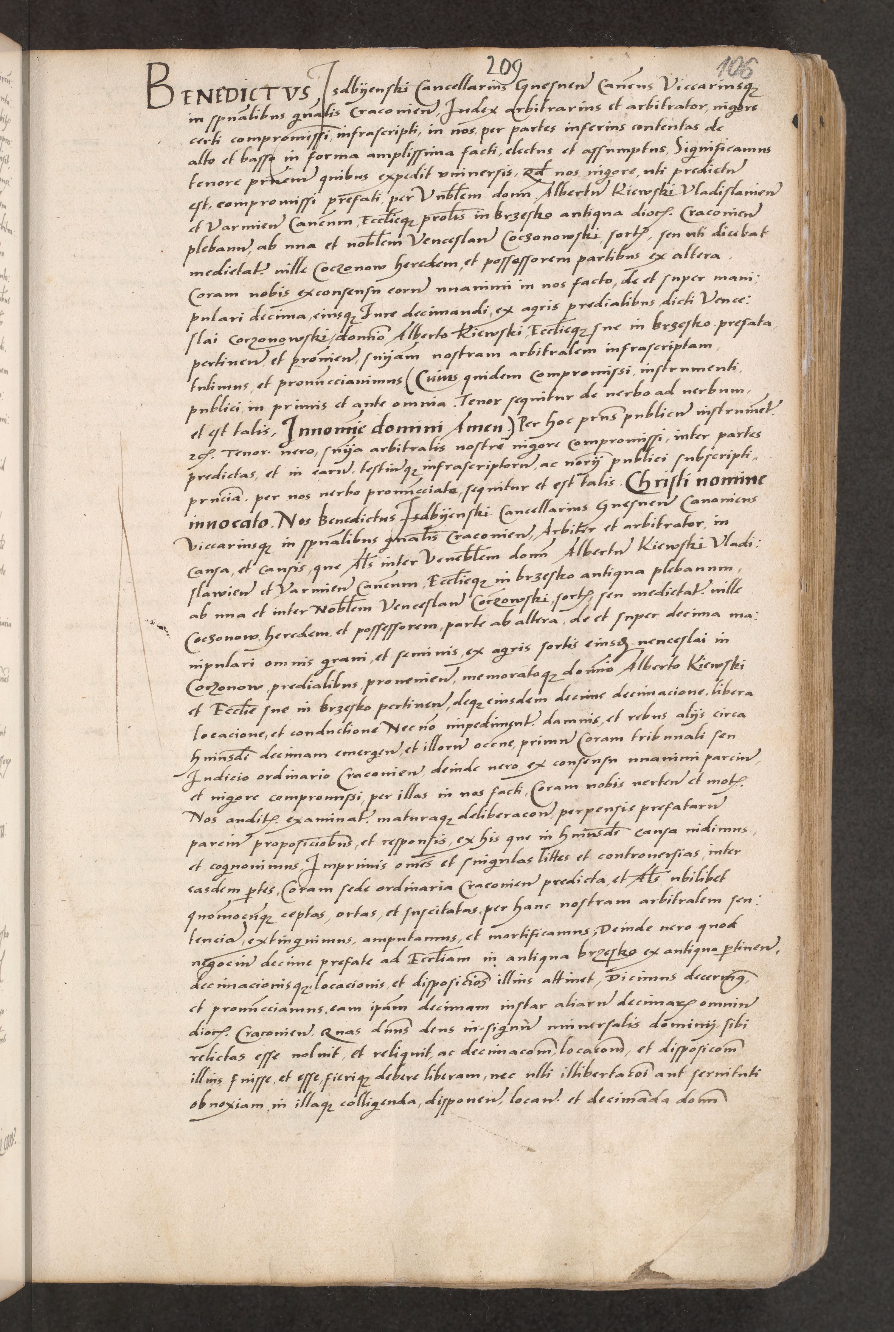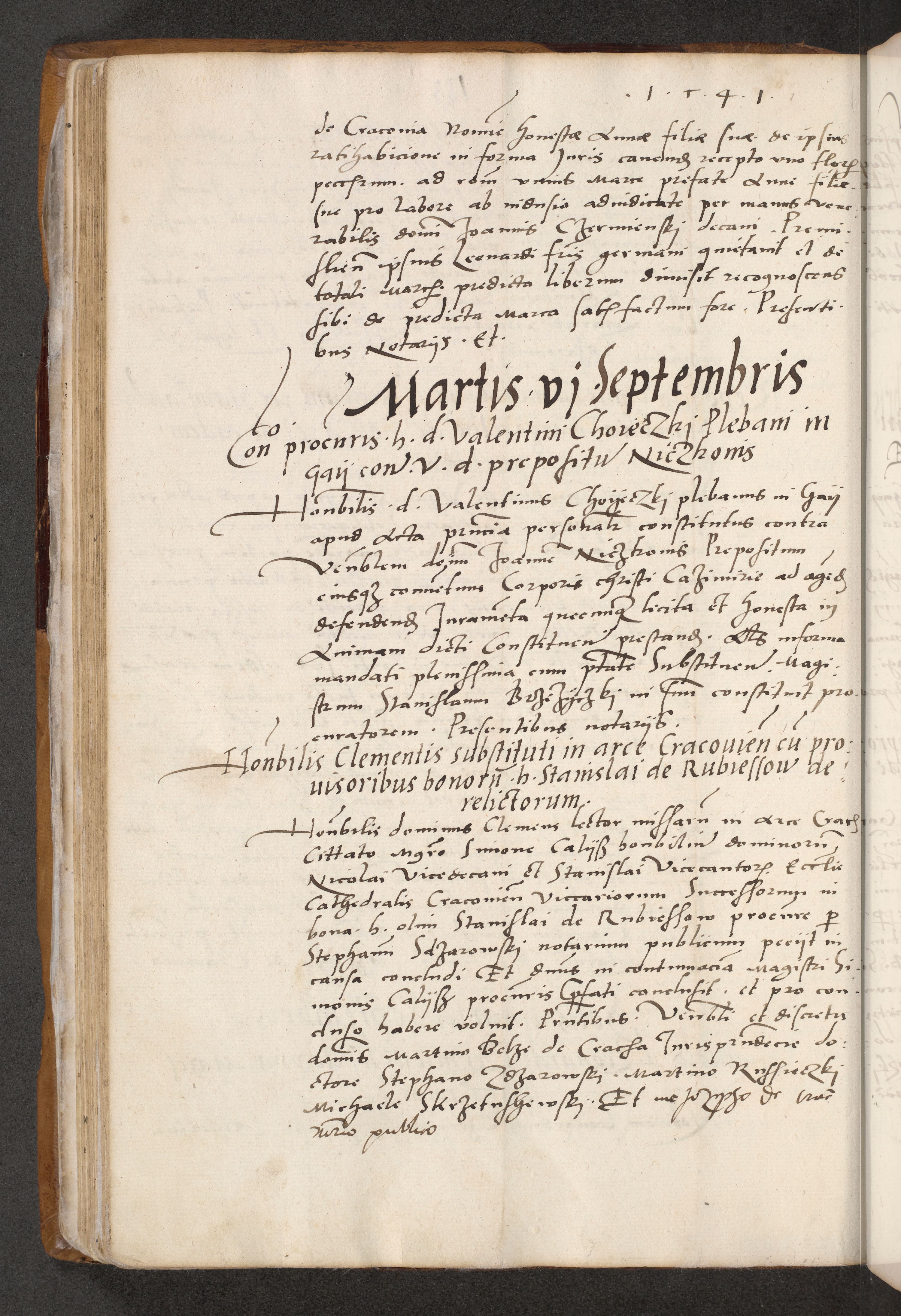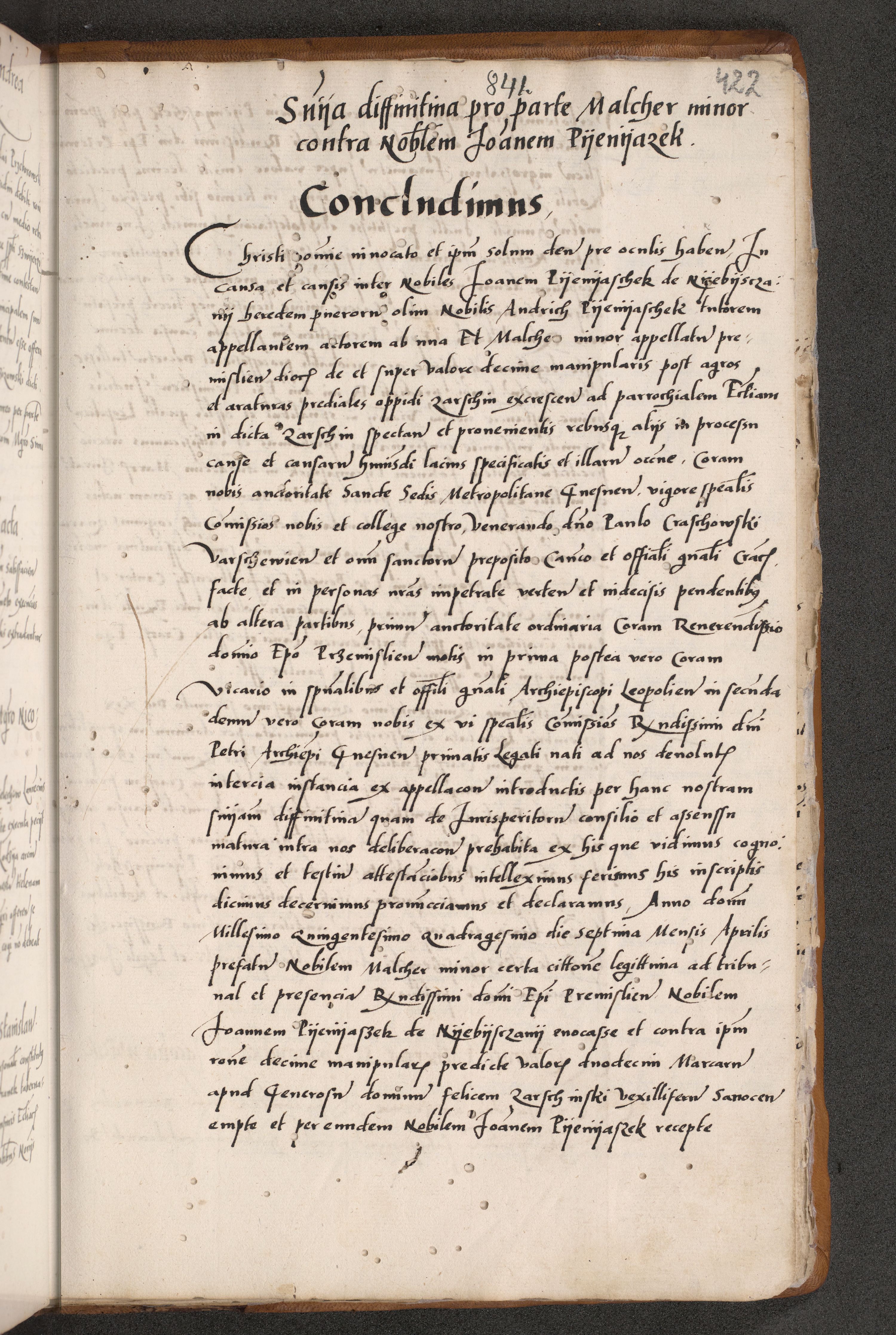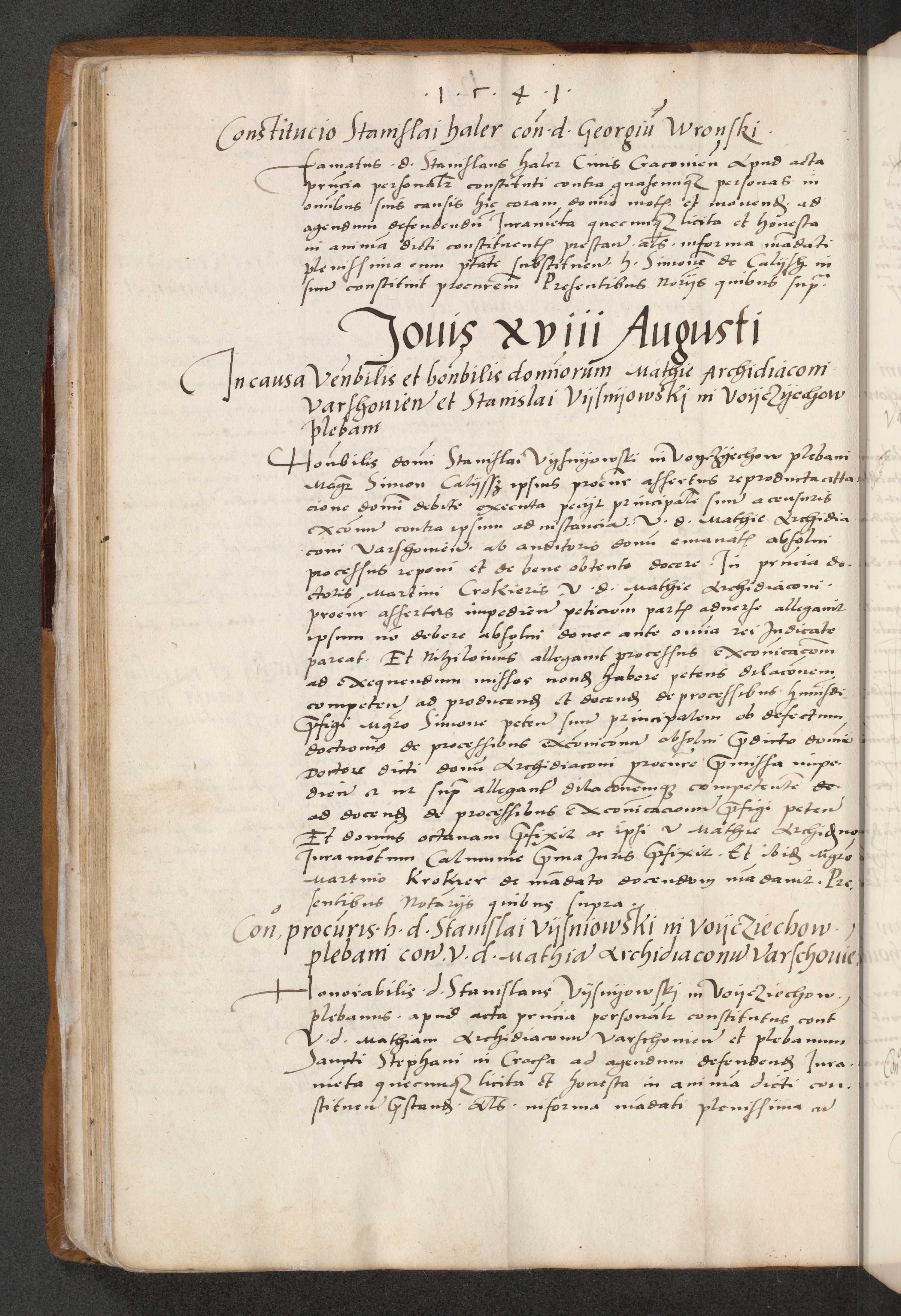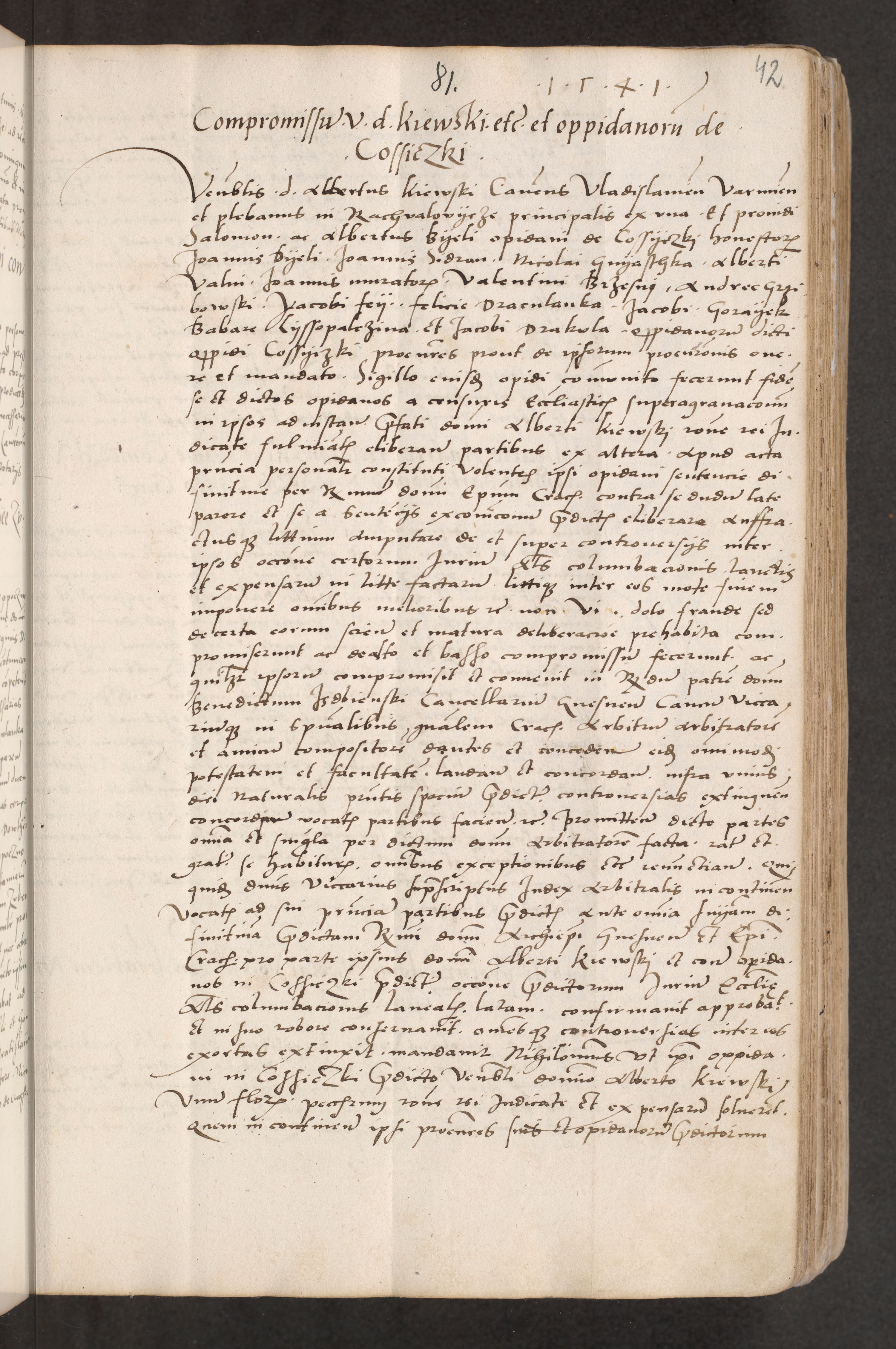 Acta actorum coram reverendo patre domino Benedicto Isdbienski cancellario Gnesnesi, canonico et reverendissimi in Christo patris et domini domini Petri Dei gratia archiepiscopi Gnesnensis et episcopi Cracoviensis sedisque apostolice legati nati et primatis Regni Polonie, vicarioque in spiritualibus generali Cracoviensi ad annum Domini millesimum quingentisimum quadragesimum primum, cuius indictio est quatuordecima, pontificatus sanctissimi in Christo patris et domini nostri domini Pauli divina providencia pape tercii, anno ipsius septimo, feliciter continuantur. Dii cepta secundent