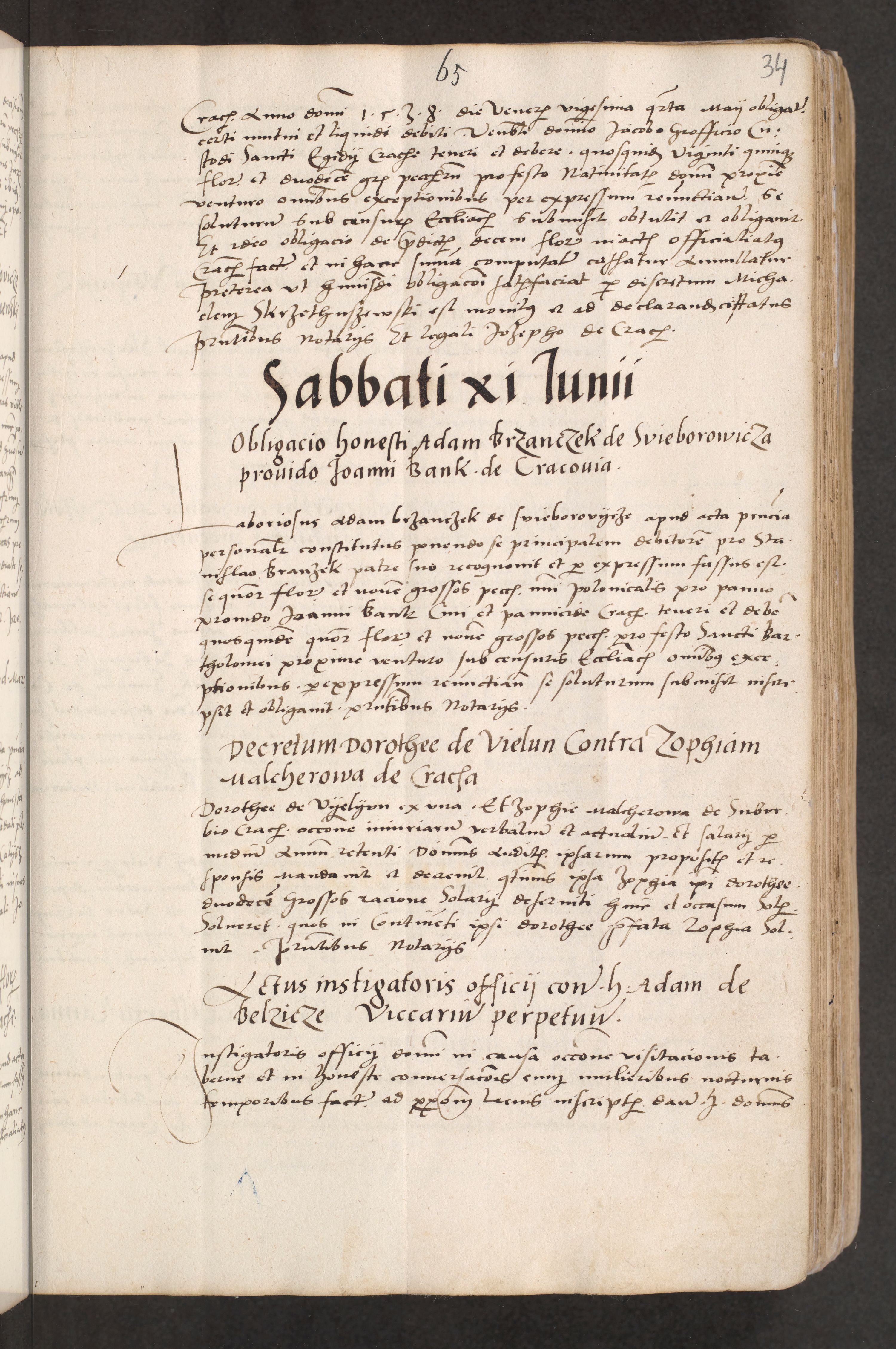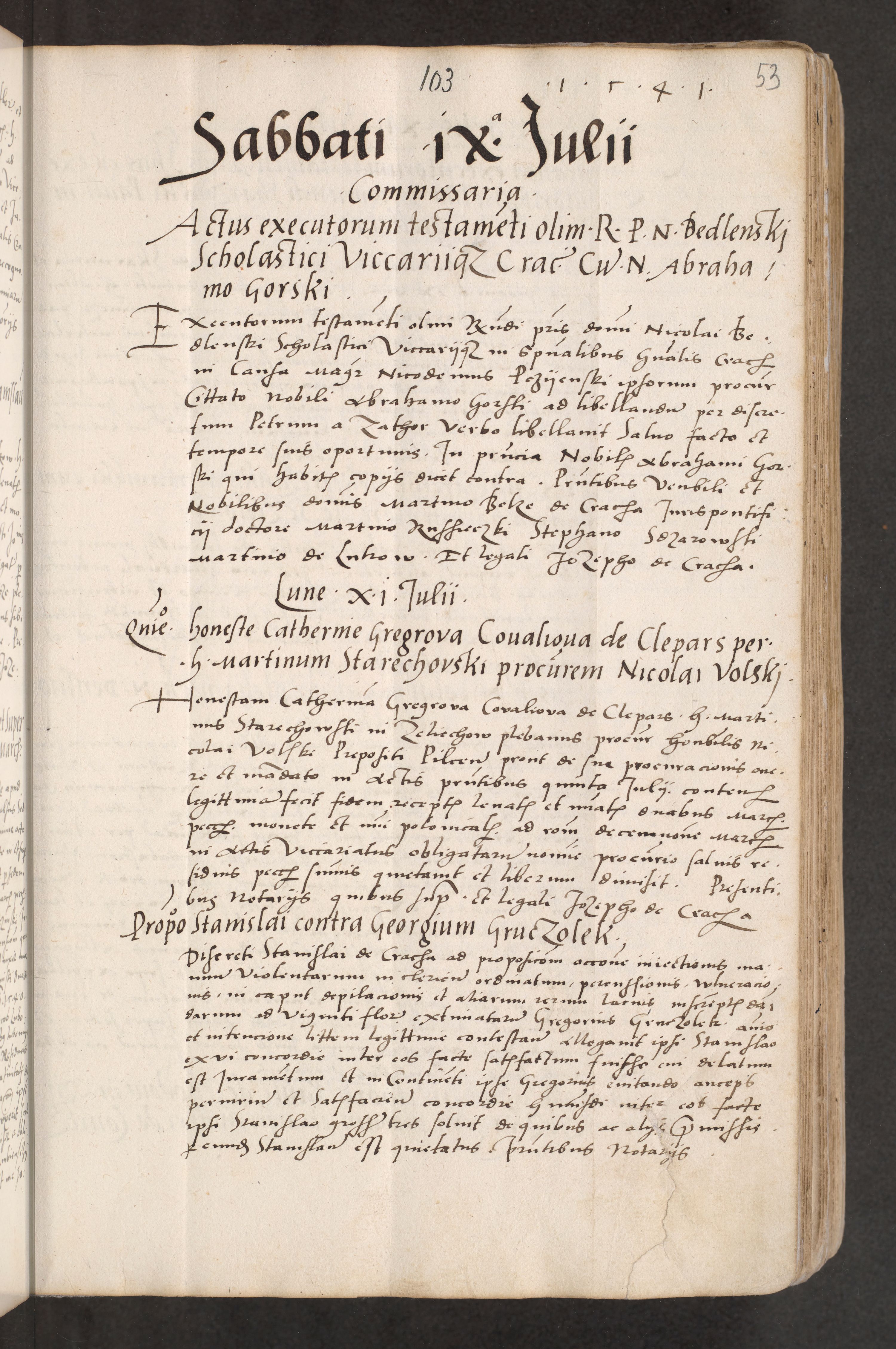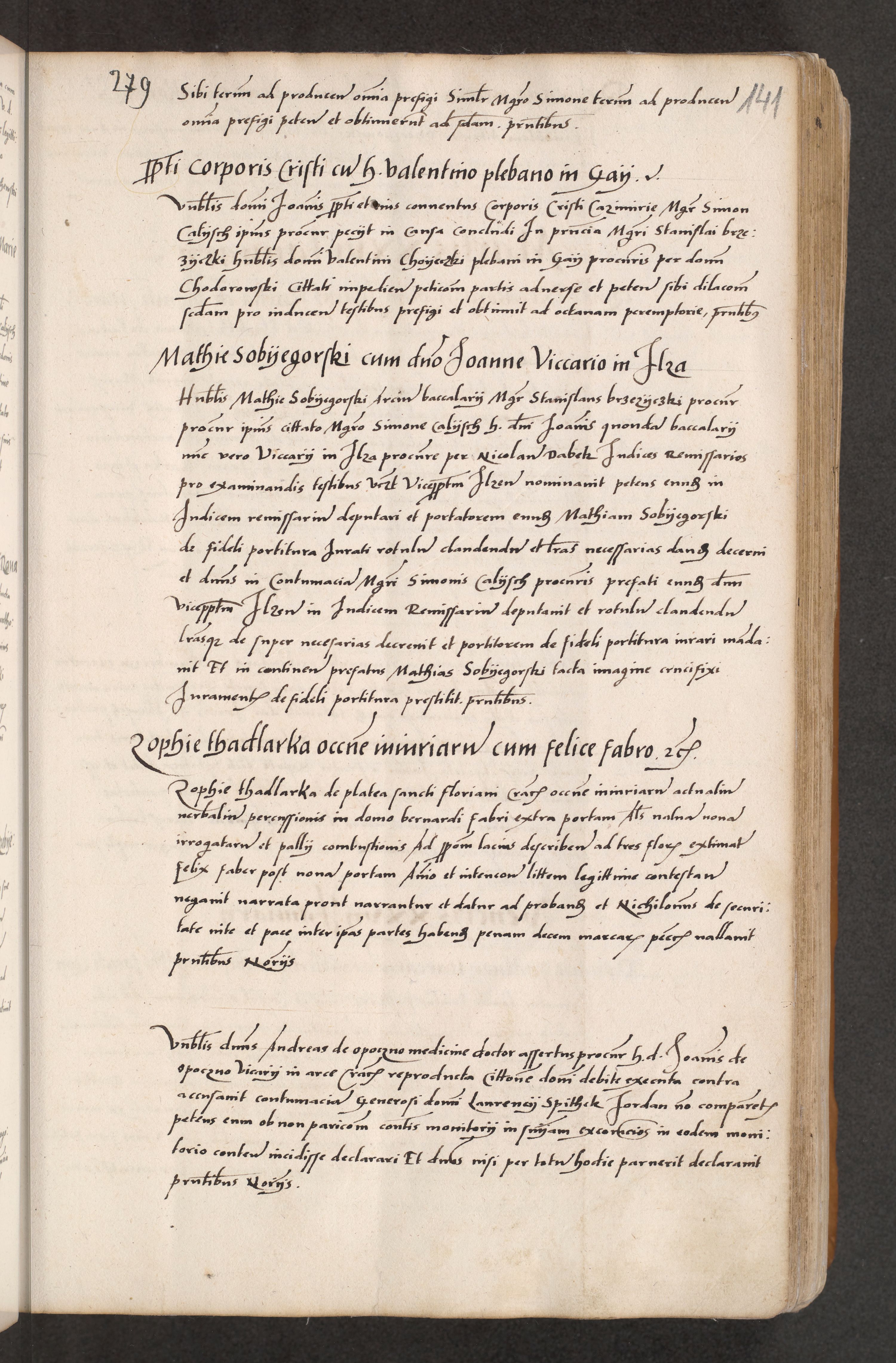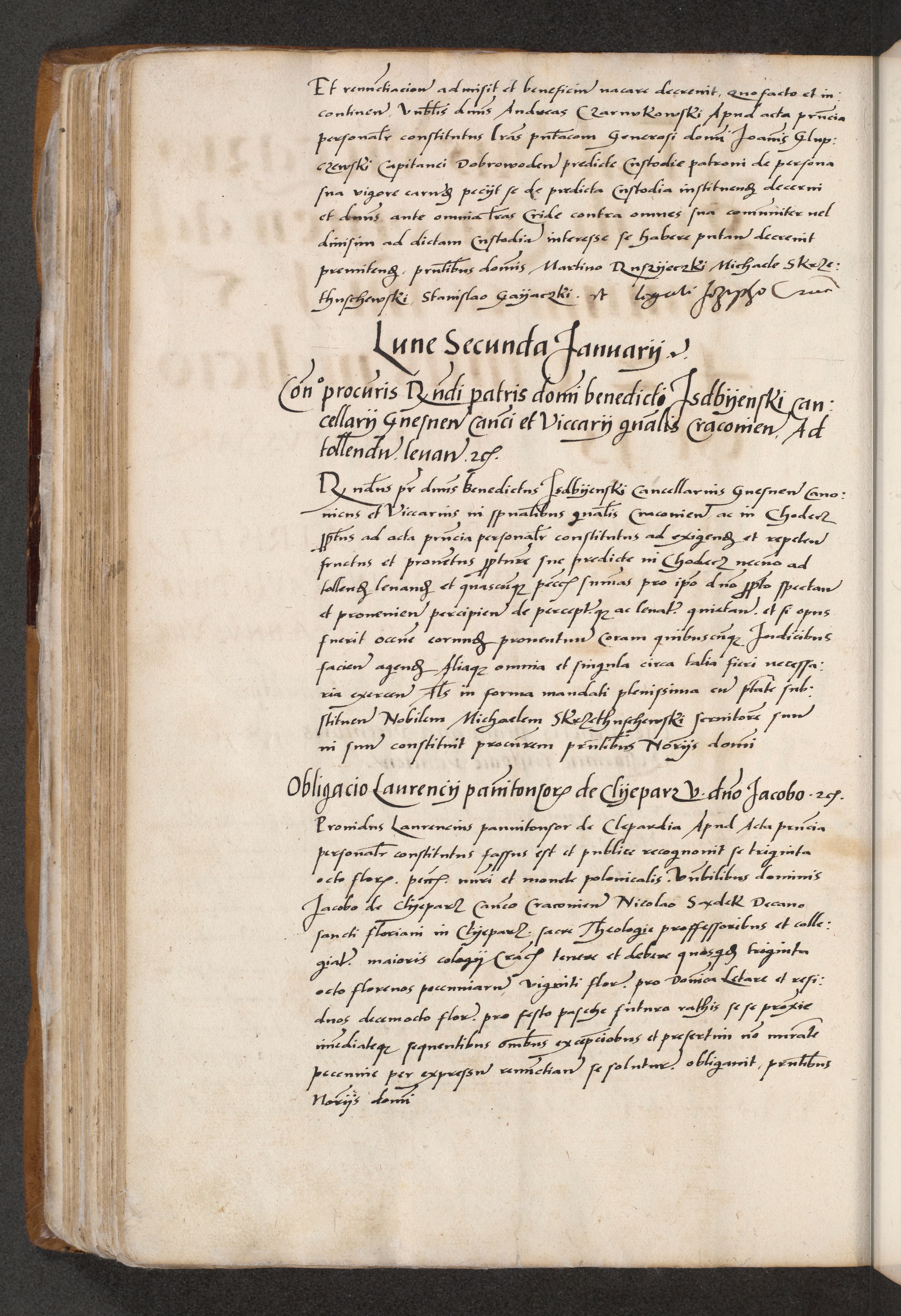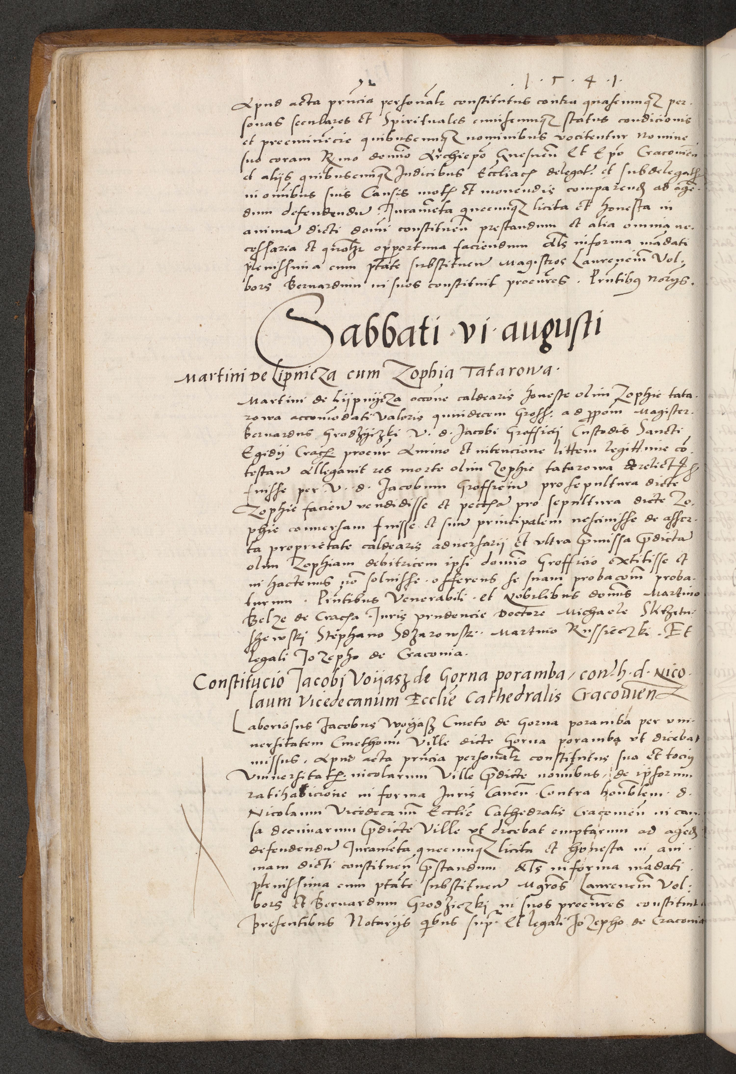 Acta actorum coram reverendo patre domino Benedicto Isdbienski cancellario Gnesnesi, canonico et reverendissimi in Christo patris et domini domini Petri Dei gratia archiepiscopi Gnesnensis et episcopi Cracoviensis sedisque apostolice legati nati et primatis Regni Polonie, vicarioque in spiritualibus generali Cracoviensi ad annum Domini millesimum quingentisimum quadragesimum primum, cuius indictio est quatuordecima, pontificatus sanctissimi in Christo patris et domini nostri domini Pauli divina providencia pape tercii, anno ipsius septimo, feliciter continuantur. Dii cepta secundent