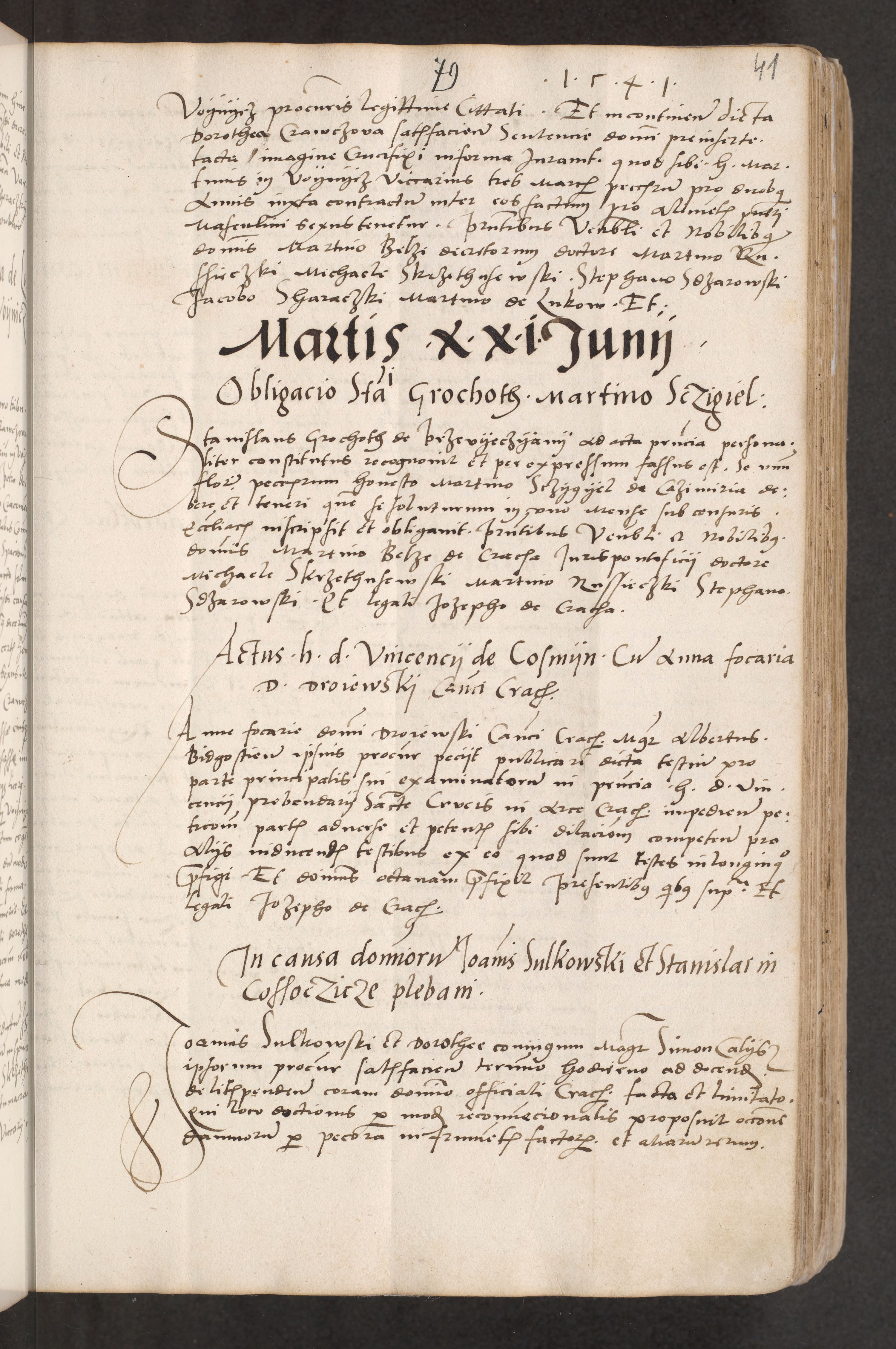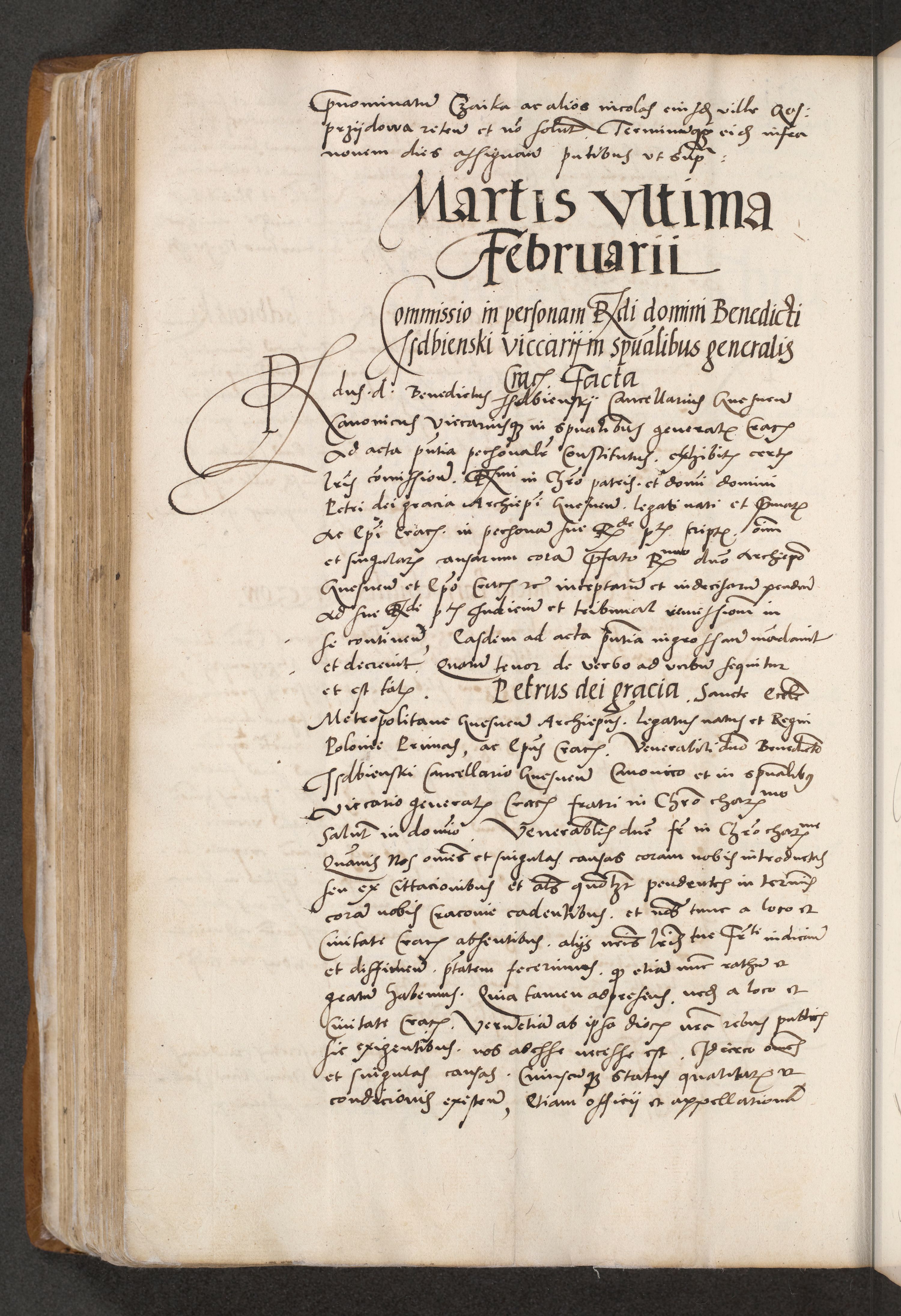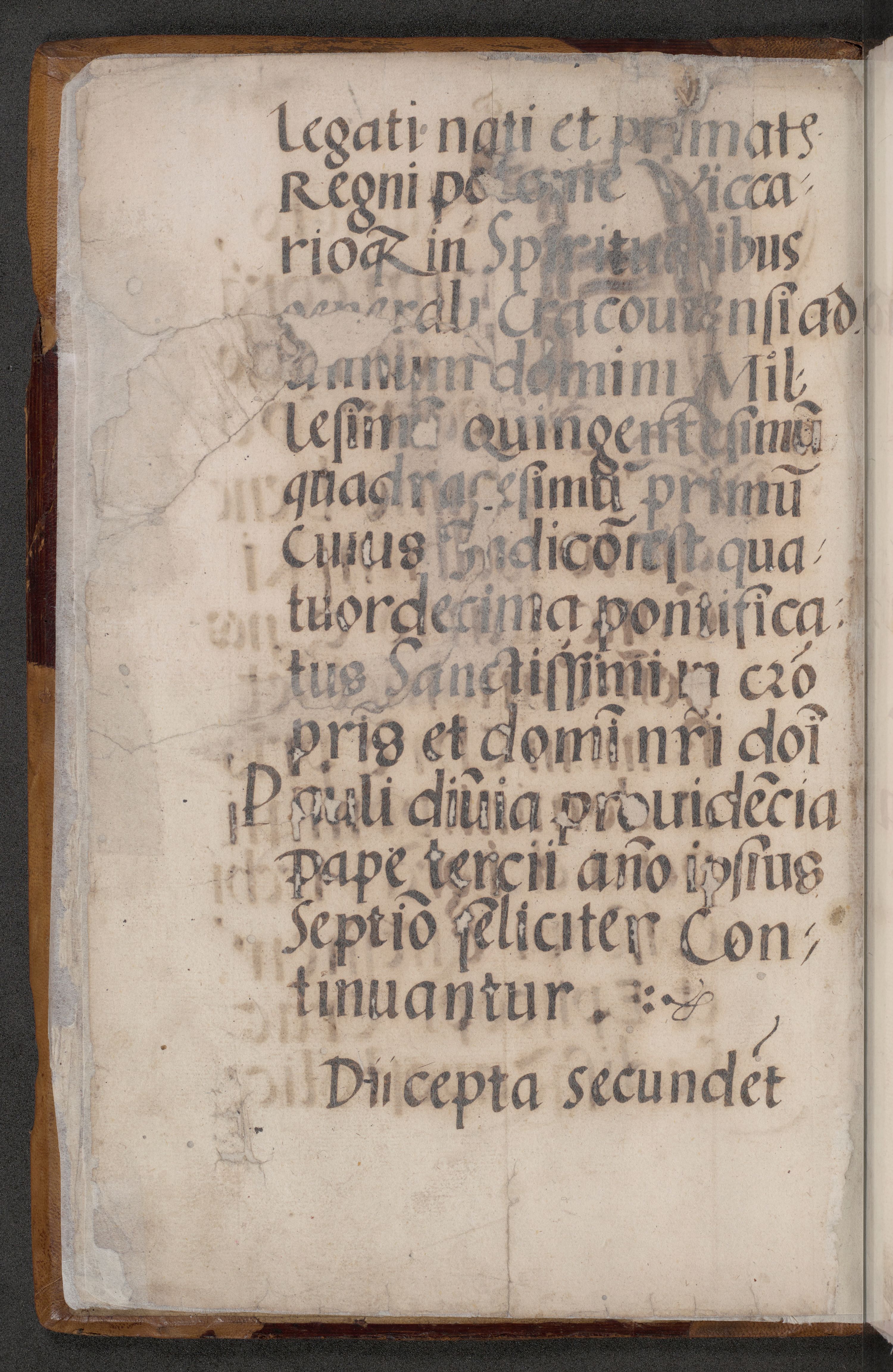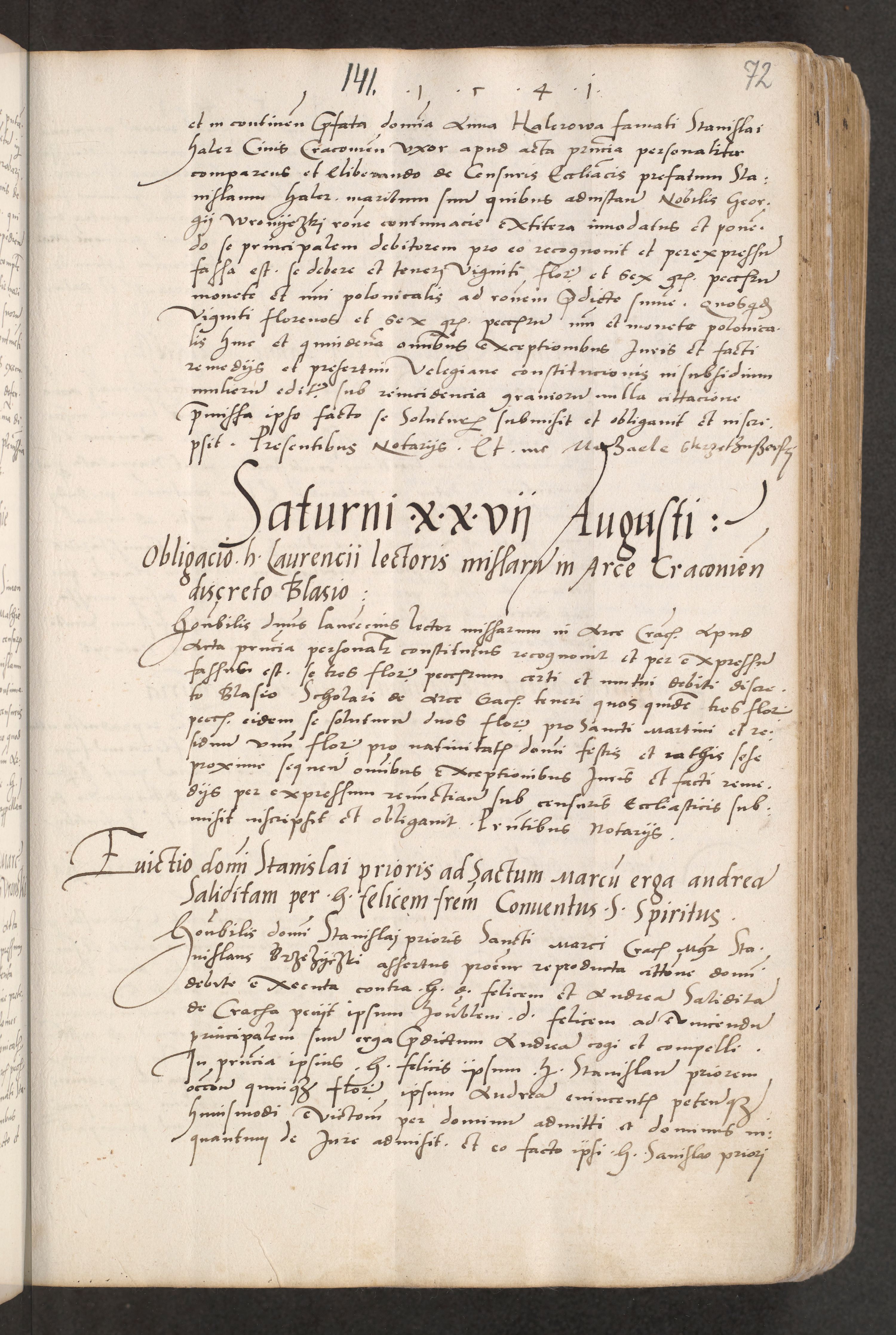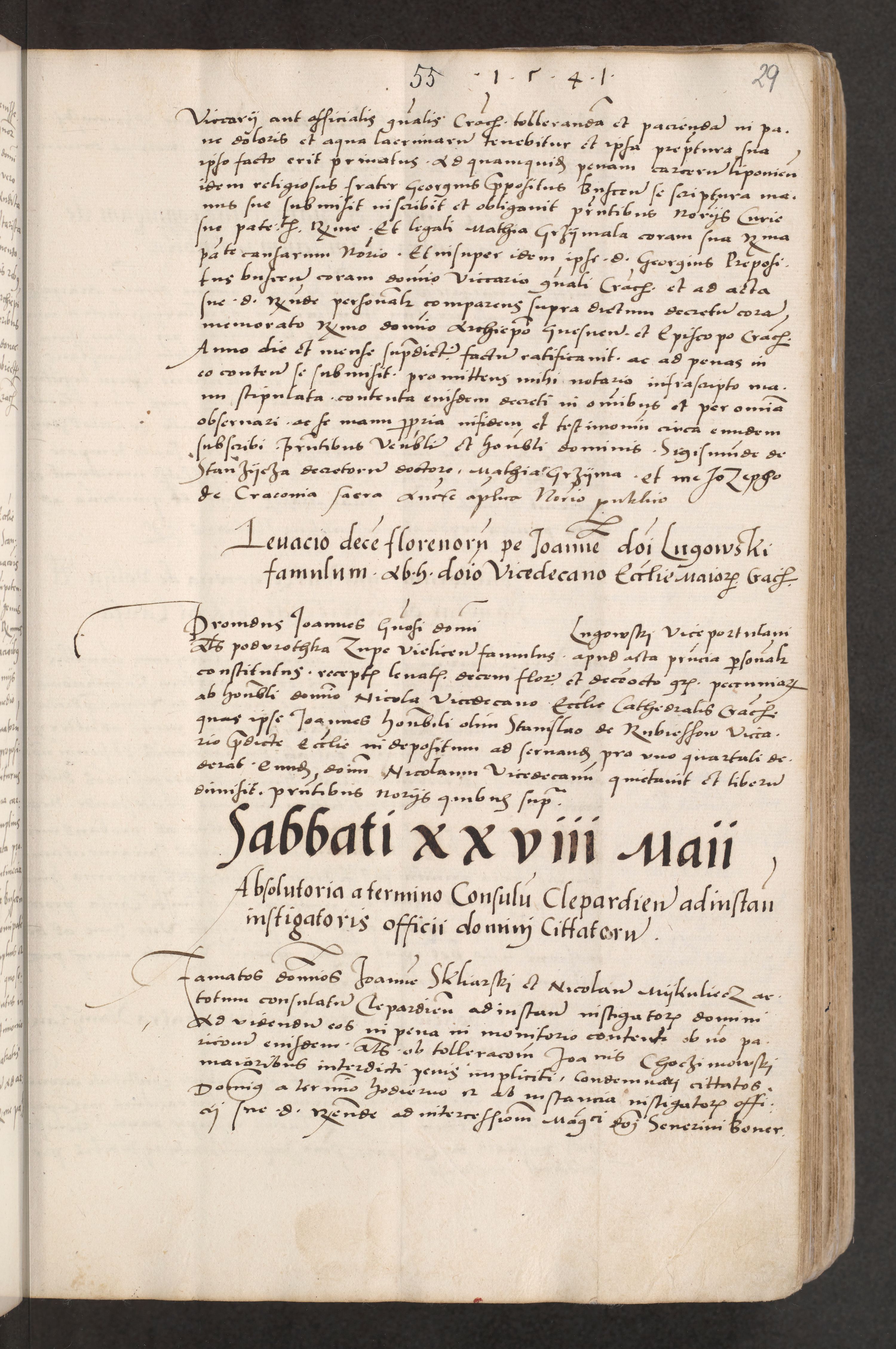 Acta actorum coram reverendo patre domino Benedicto Isdbienski cancellario Gnesnesi, canonico et reverendissimi in Christo patris et domini domini Petri Dei gratia archiepiscopi Gnesnensis et episcopi Cracoviensis sedisque apostolice legati nati et primatis Regni Polonie, vicarioque in spiritualibus generali Cracoviensi ad annum Domini millesimum quingentisimum quadragesimum primum, cuius indictio est quatuordecima, pontificatus sanctissimi in Christo patris et domini nostri domini Pauli divina providencia pape tercii, anno ipsius septimo, feliciter continuantur. Dii cepta secundent