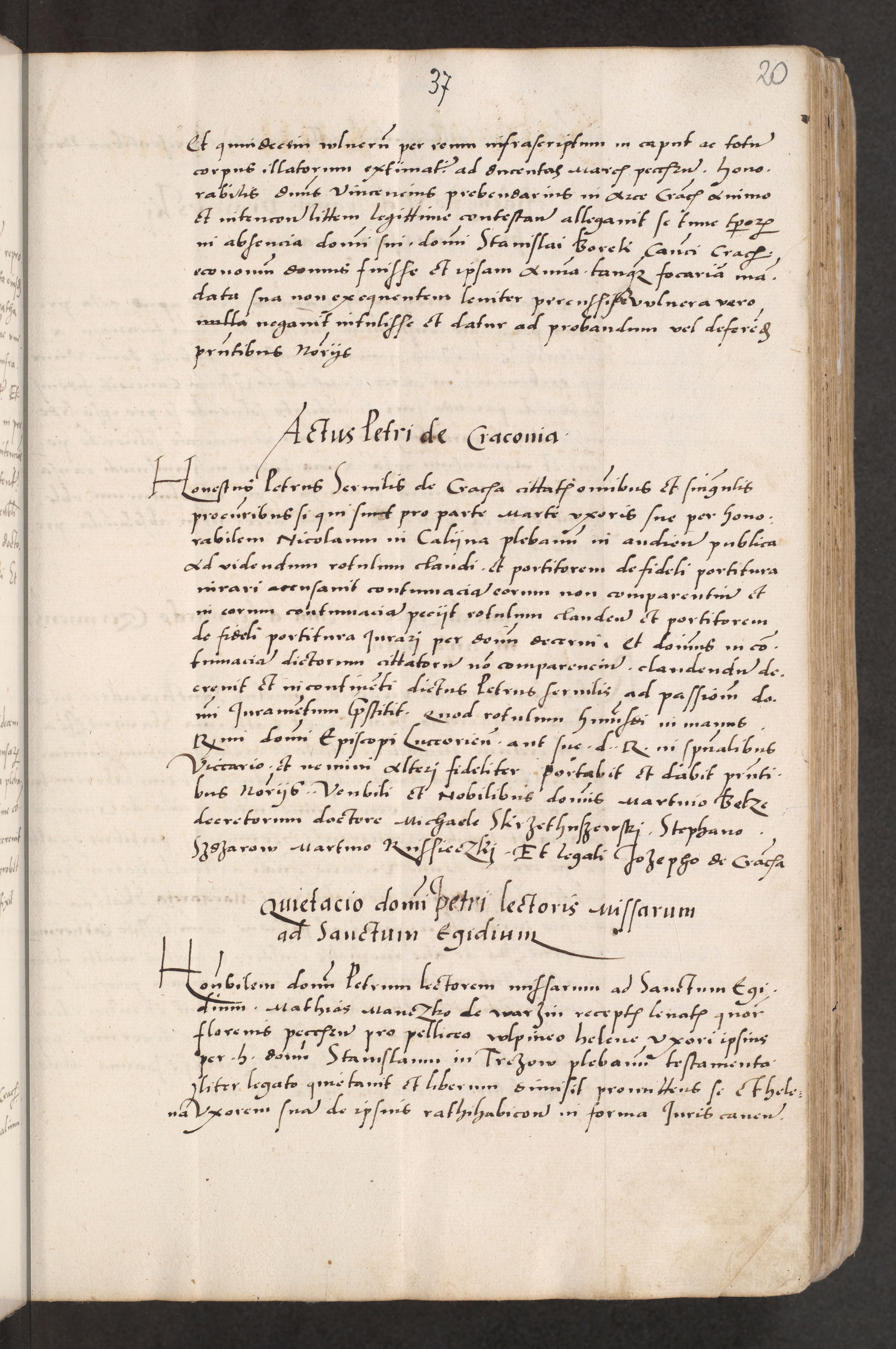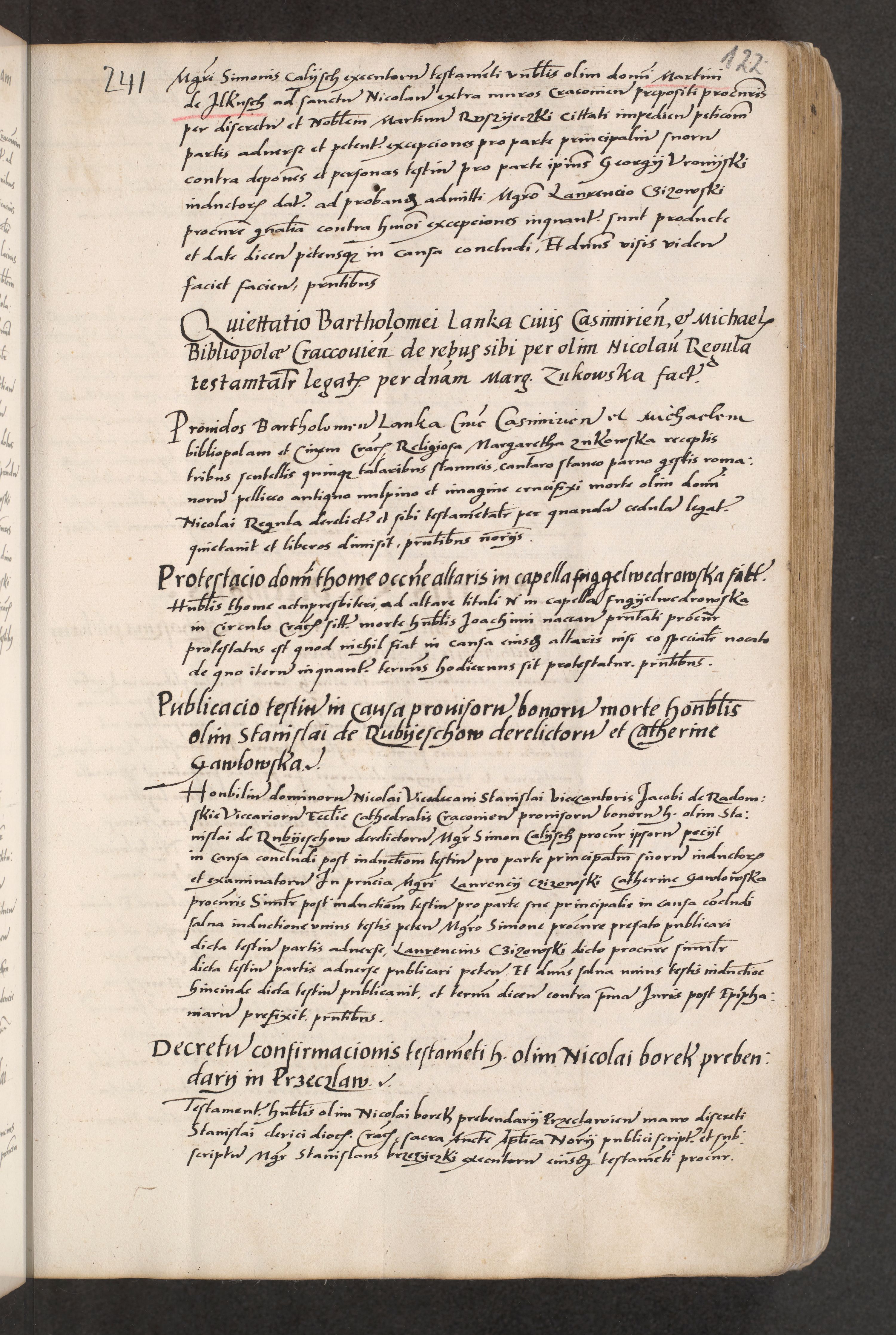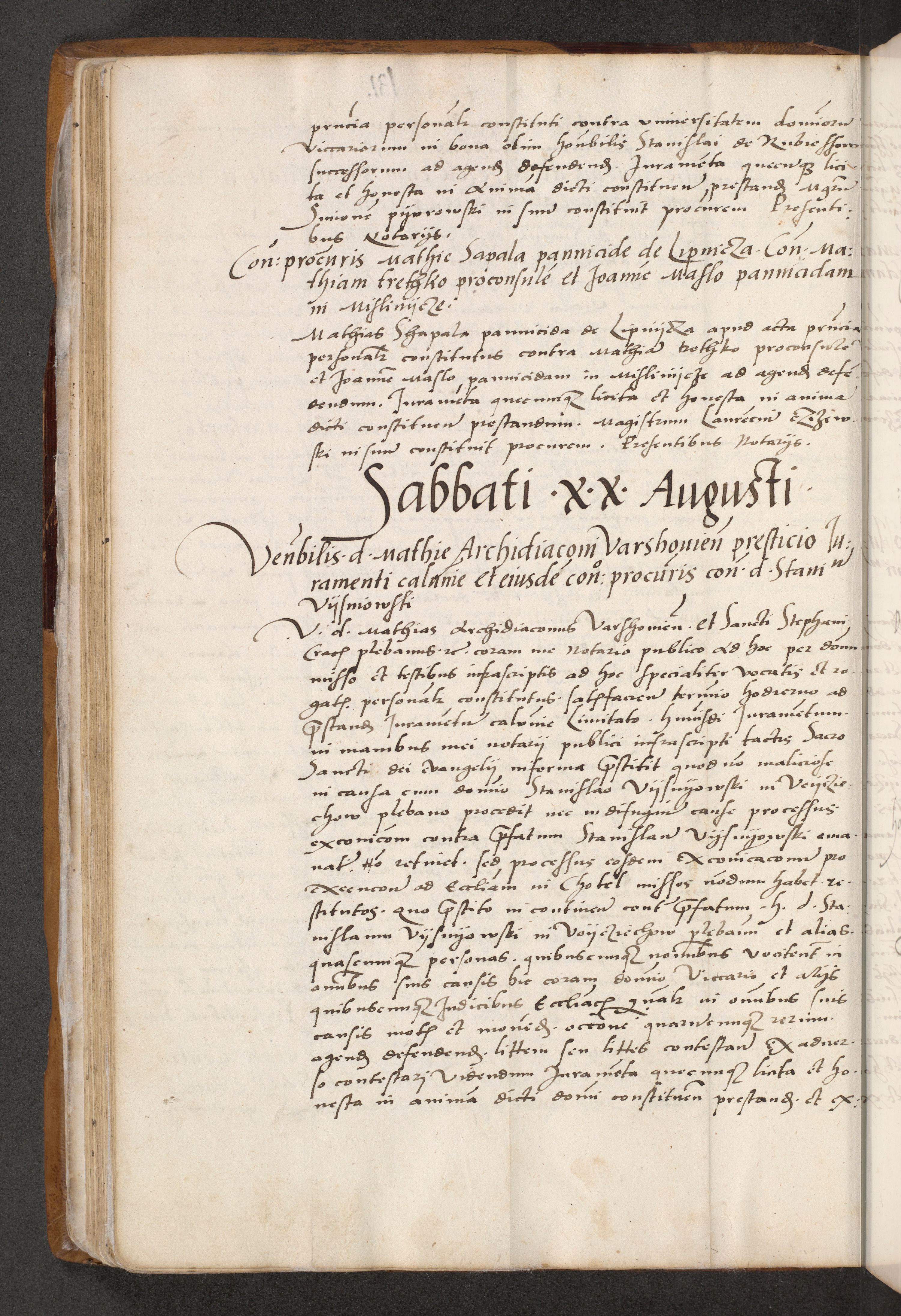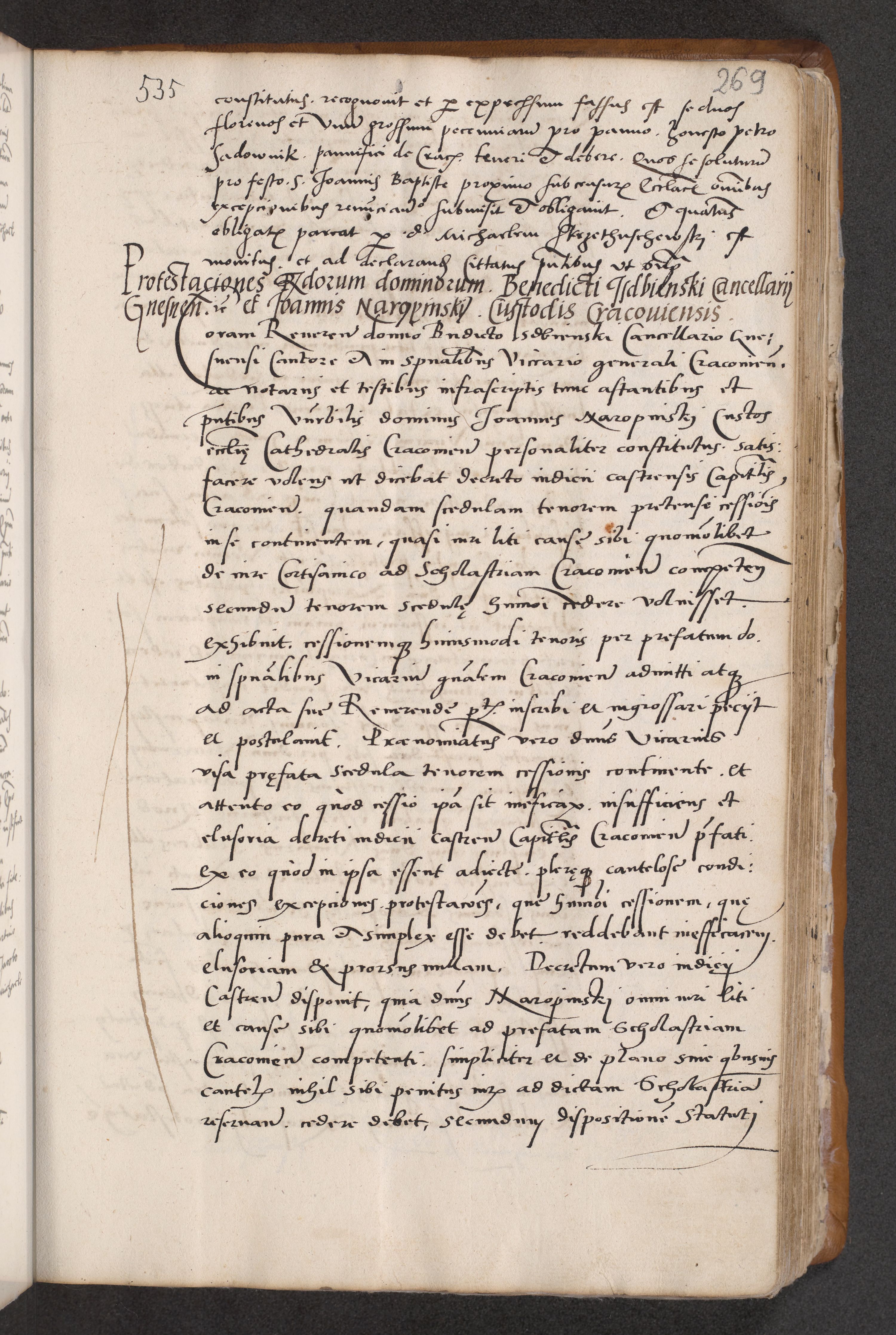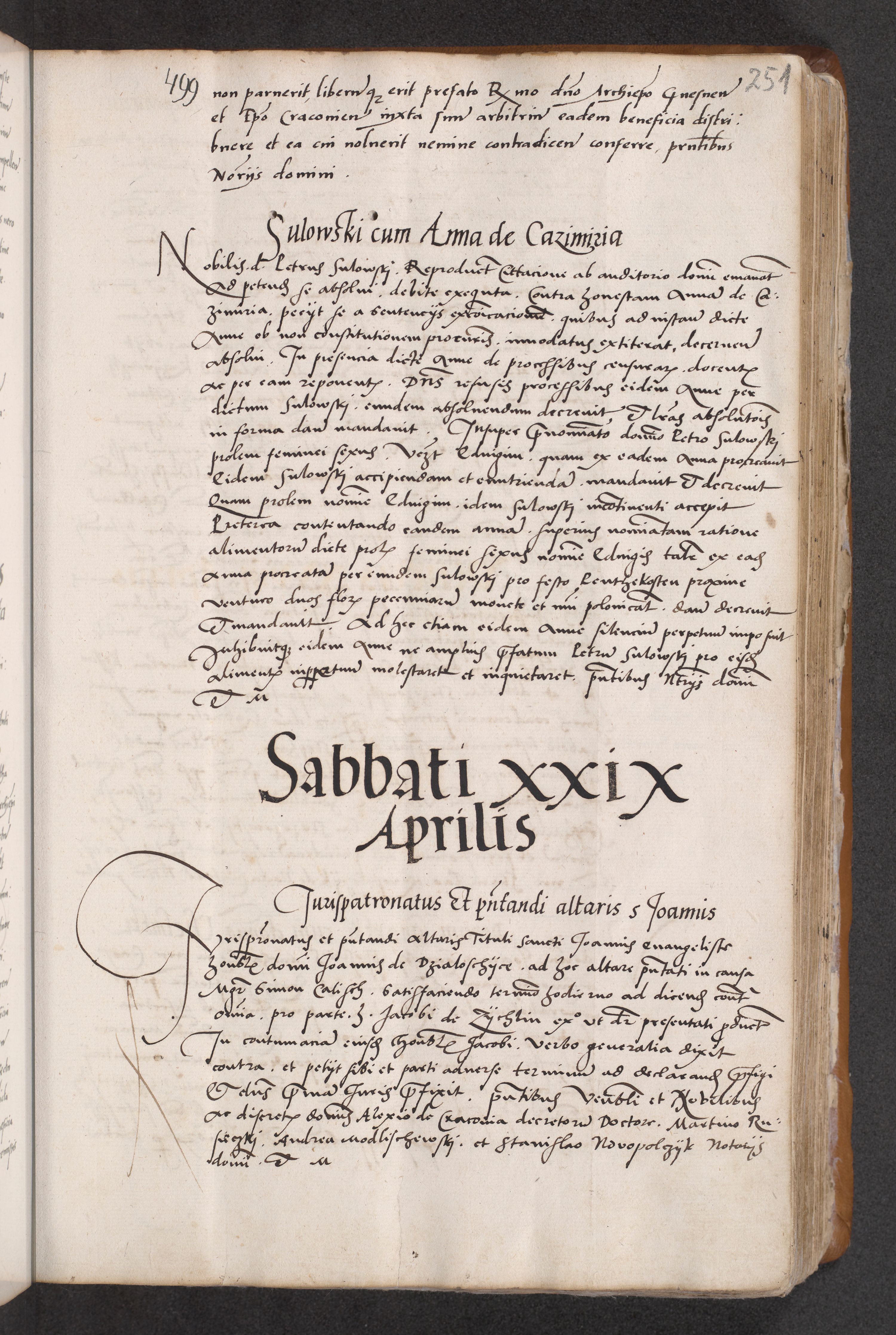 Acta actorum coram reverendo patre domino Benedicto Isdbienski cancellario Gnesnesi, canonico et reverendissimi in Christo patris et domini domini Petri Dei gratia archiepiscopi Gnesnensis et episcopi Cracoviensis sedisque apostolice legati nati et primatis Regni Polonie, vicarioque in spiritualibus generali Cracoviensi ad annum Domini millesimum quingentisimum quadragesimum primum, cuius indictio est quatuordecima, pontificatus sanctissimi in Christo patris et domini nostri domini Pauli divina providencia pape tercii, anno ipsius septimo, feliciter continuantur. Dii cepta secundent